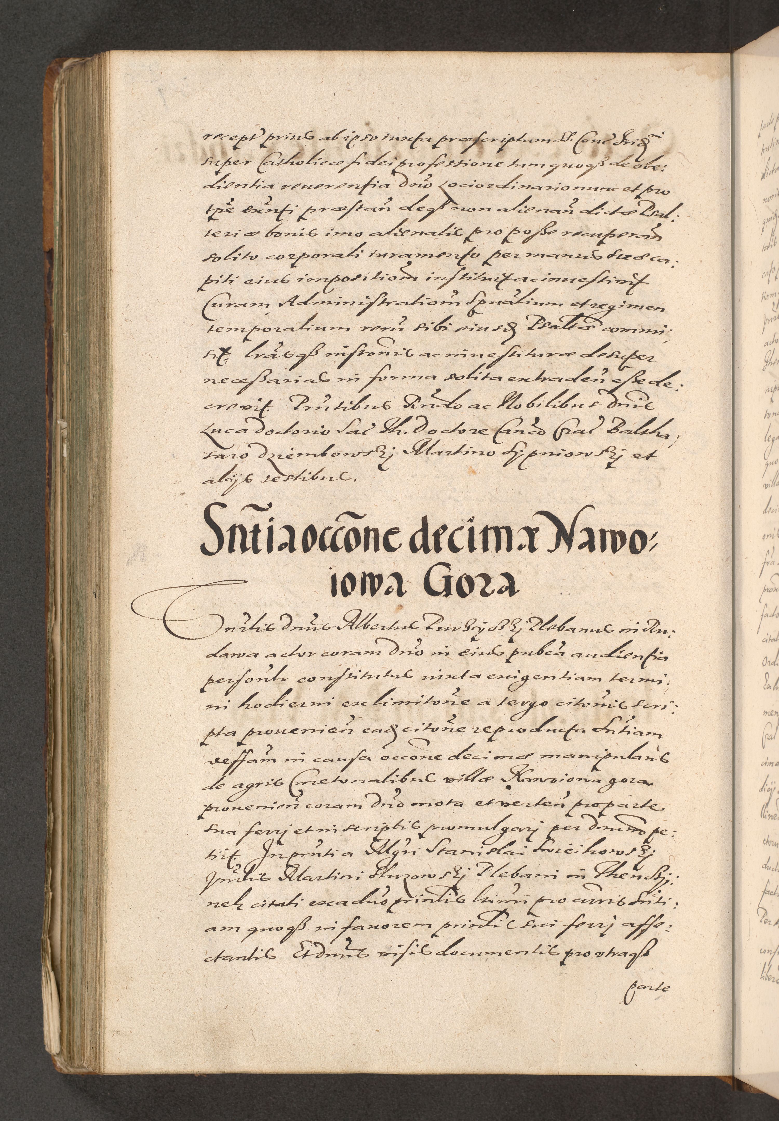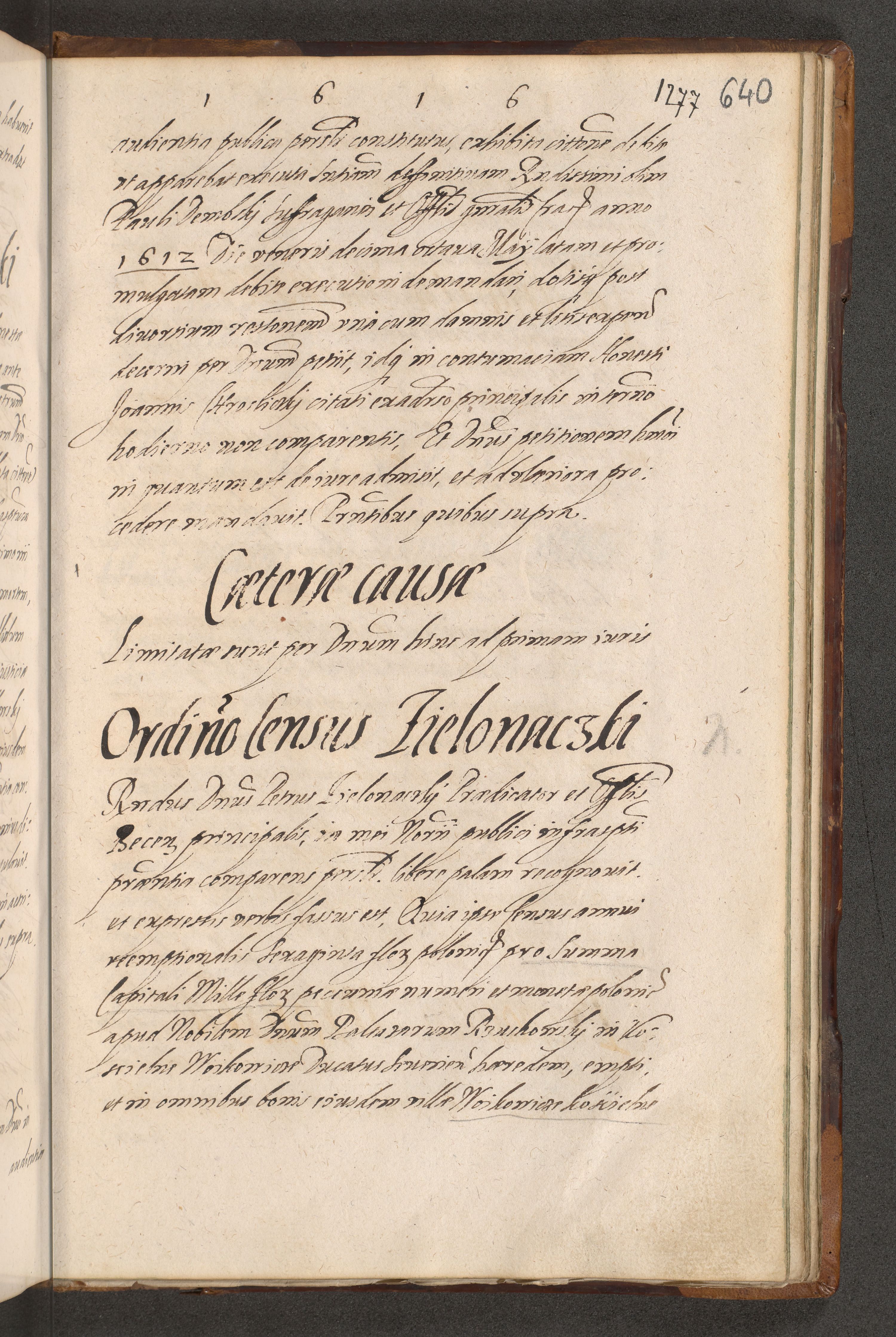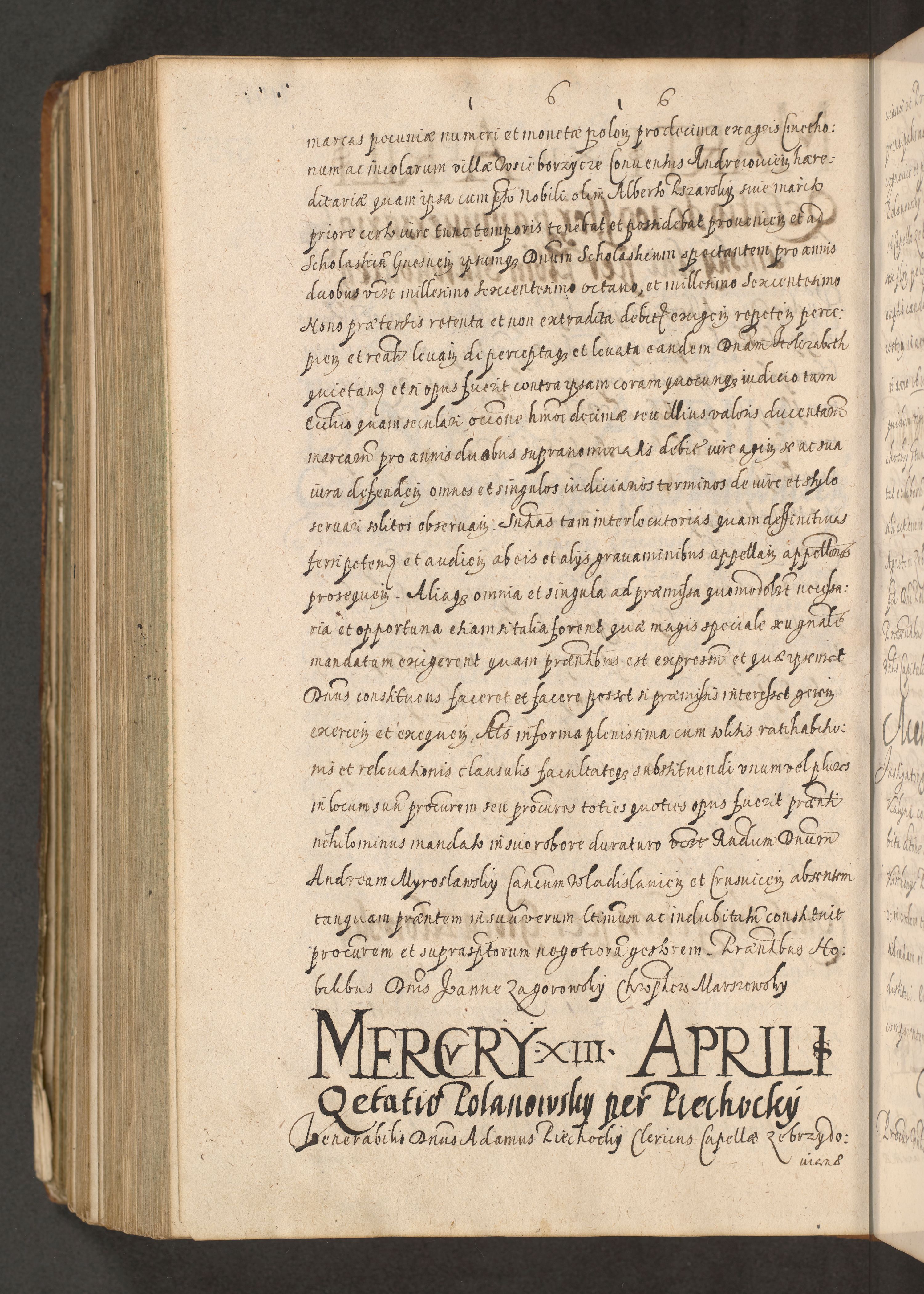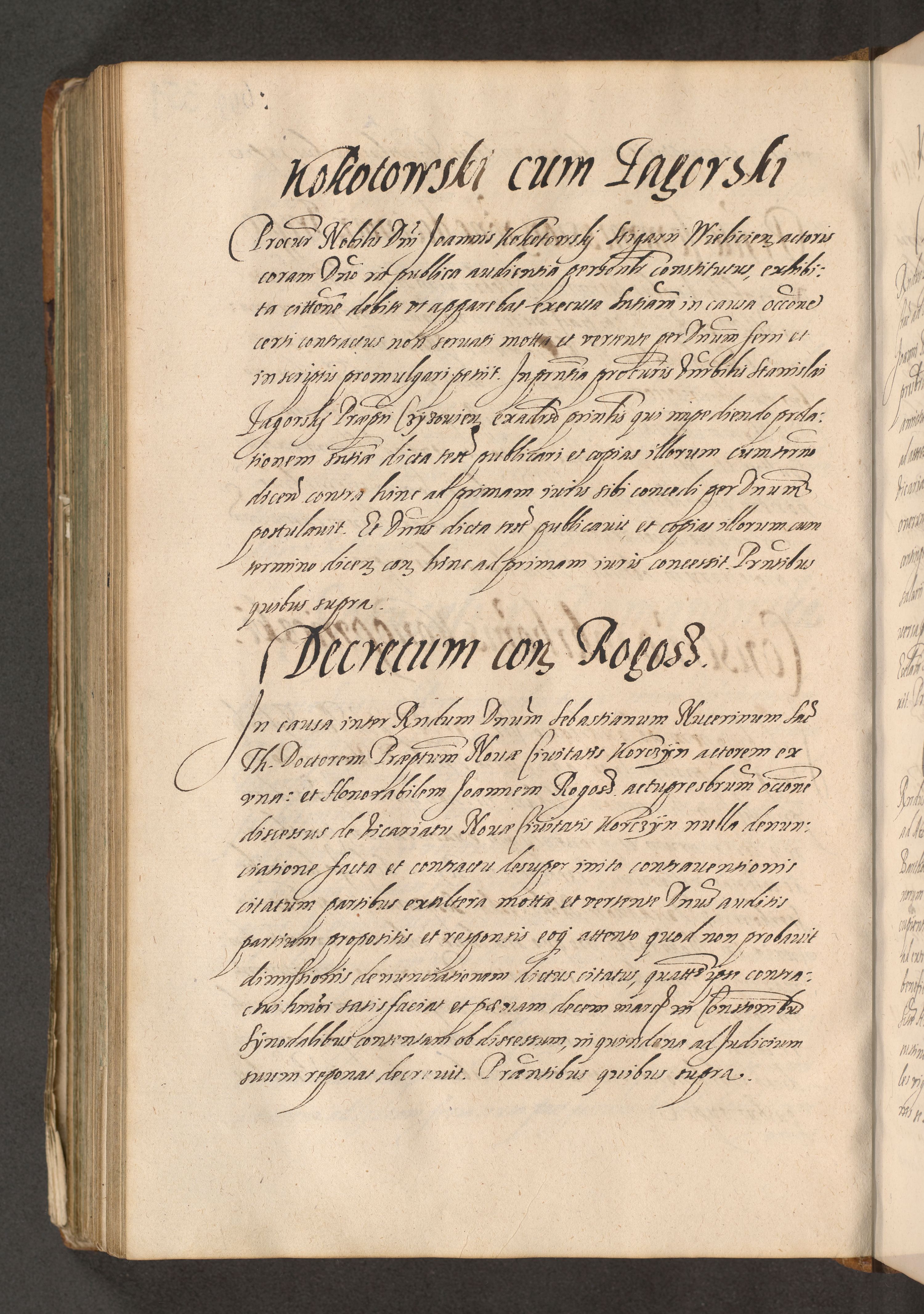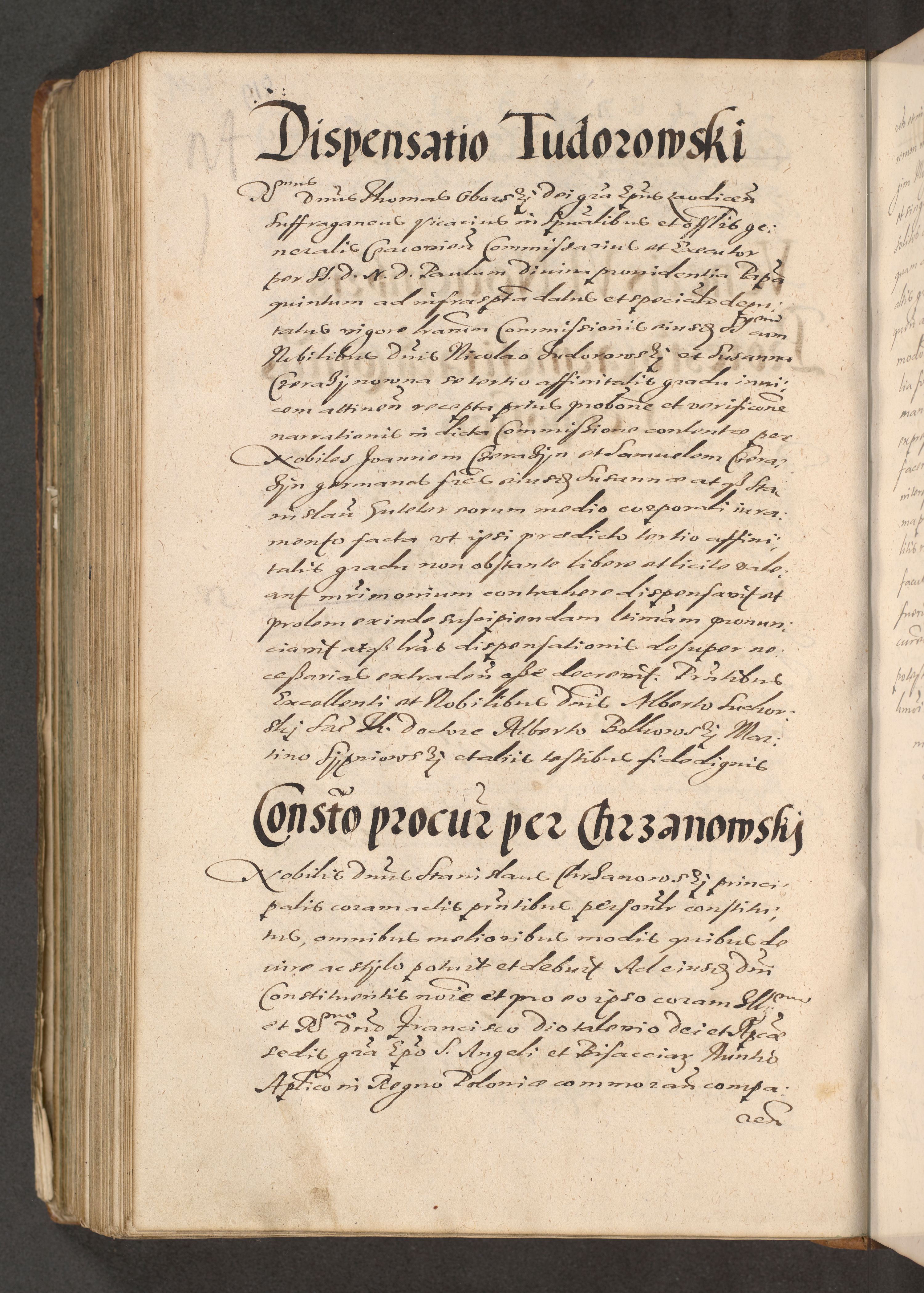 Illustrissimo et Reverendissimo in Christo Patre Domino Domino Petro Tylicki Dei et Apostolice Sedis Gratia Episcopo Cracoviensis Duce Severiensis Acta actorum causarum sententiarum tam interloquutoriarum quam definitivarum decretorum obligationum, quietationum, recognitionum, constitutionum procuratorum etc. etc. coram Admodum Reverendo Domino Thoma Oborski I. V. Doctore Canonico Vicario in Spiritualibus et Officiali generali Cracoviensis in anno Domini Millesimo Sexcentessimo Decimoquarto Cuius Indictio duodecima Pontificus SS. D. N. D. Pauli Divina providentia Papae quinti Anno decimo foeliciter incipiunt