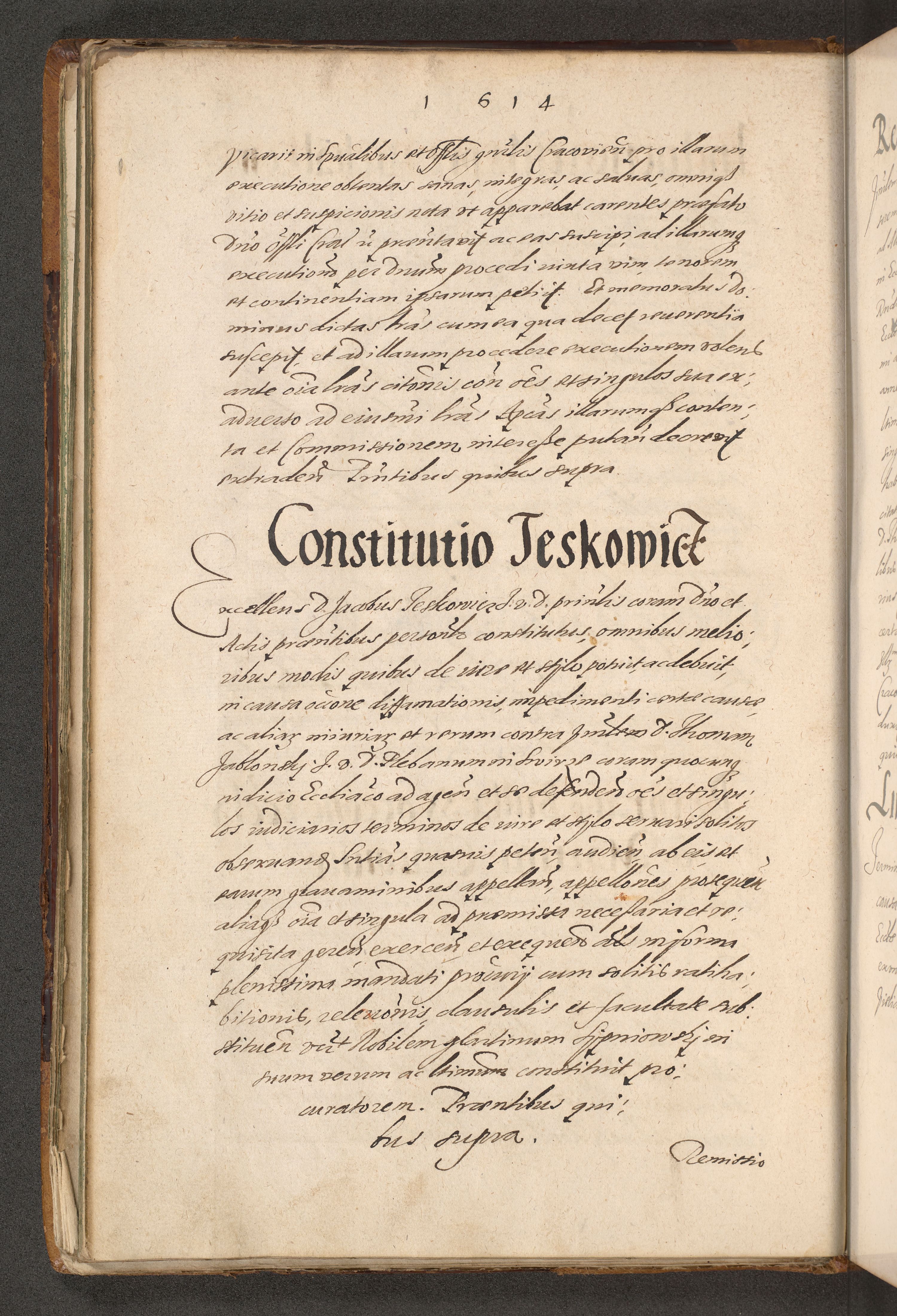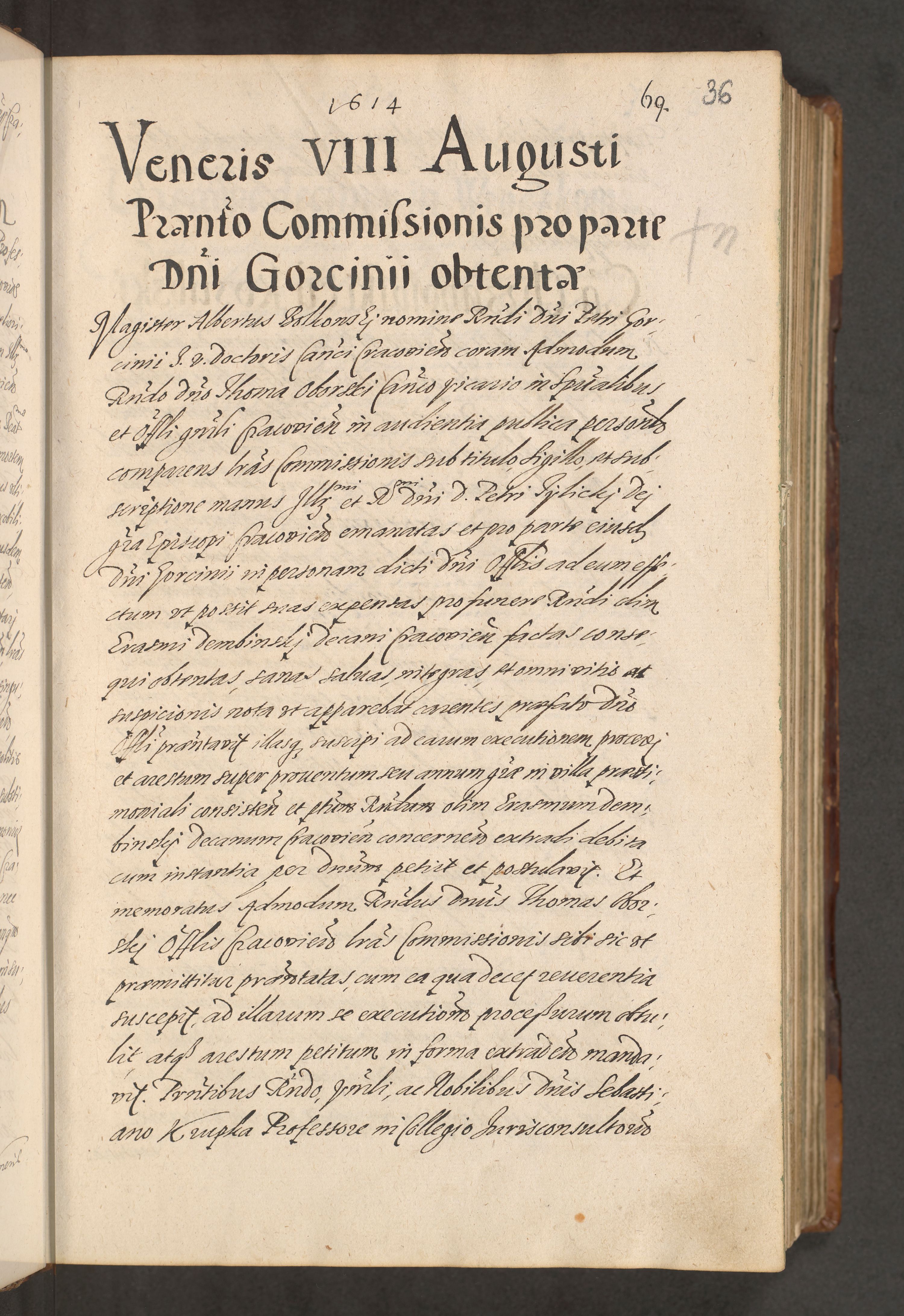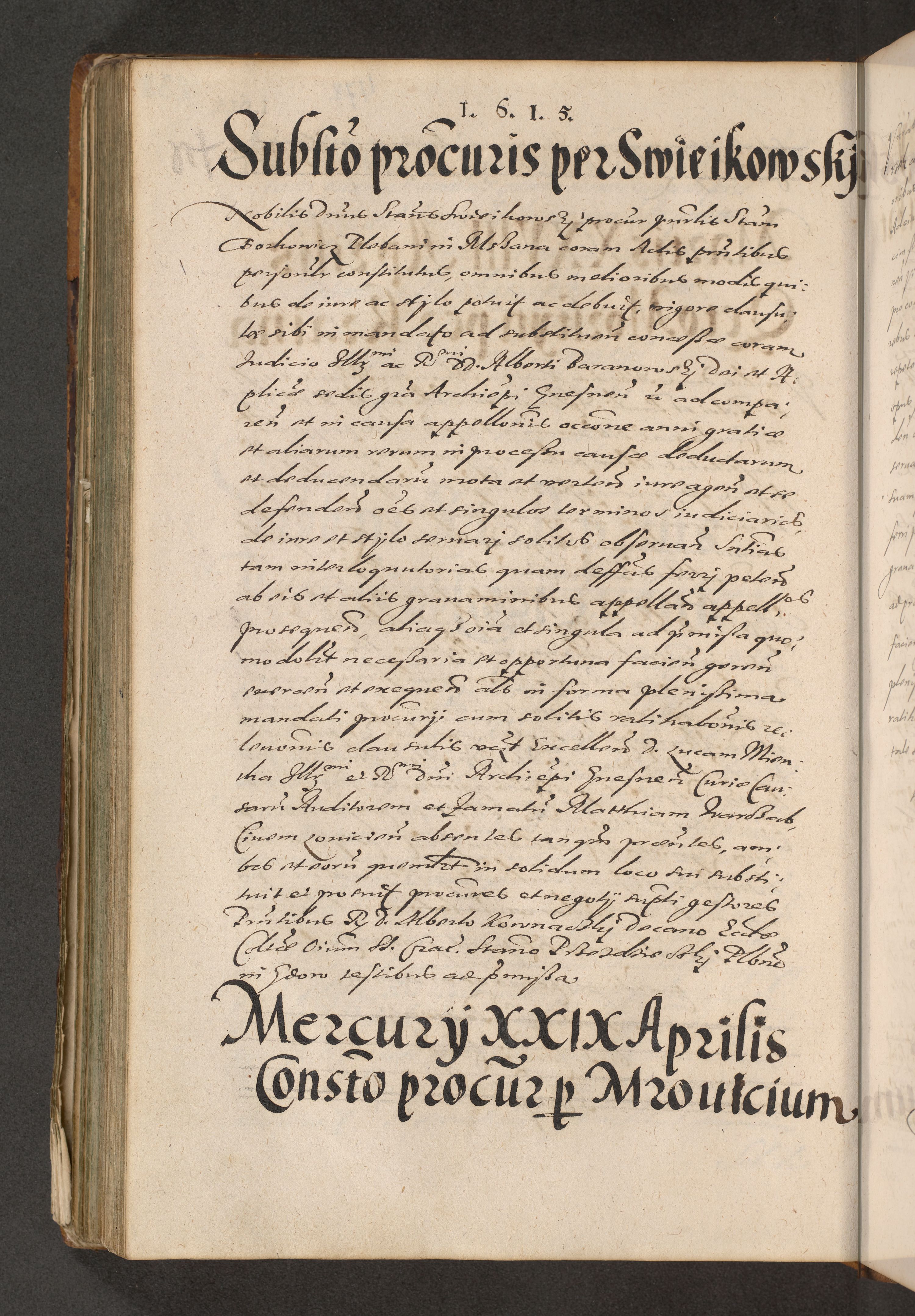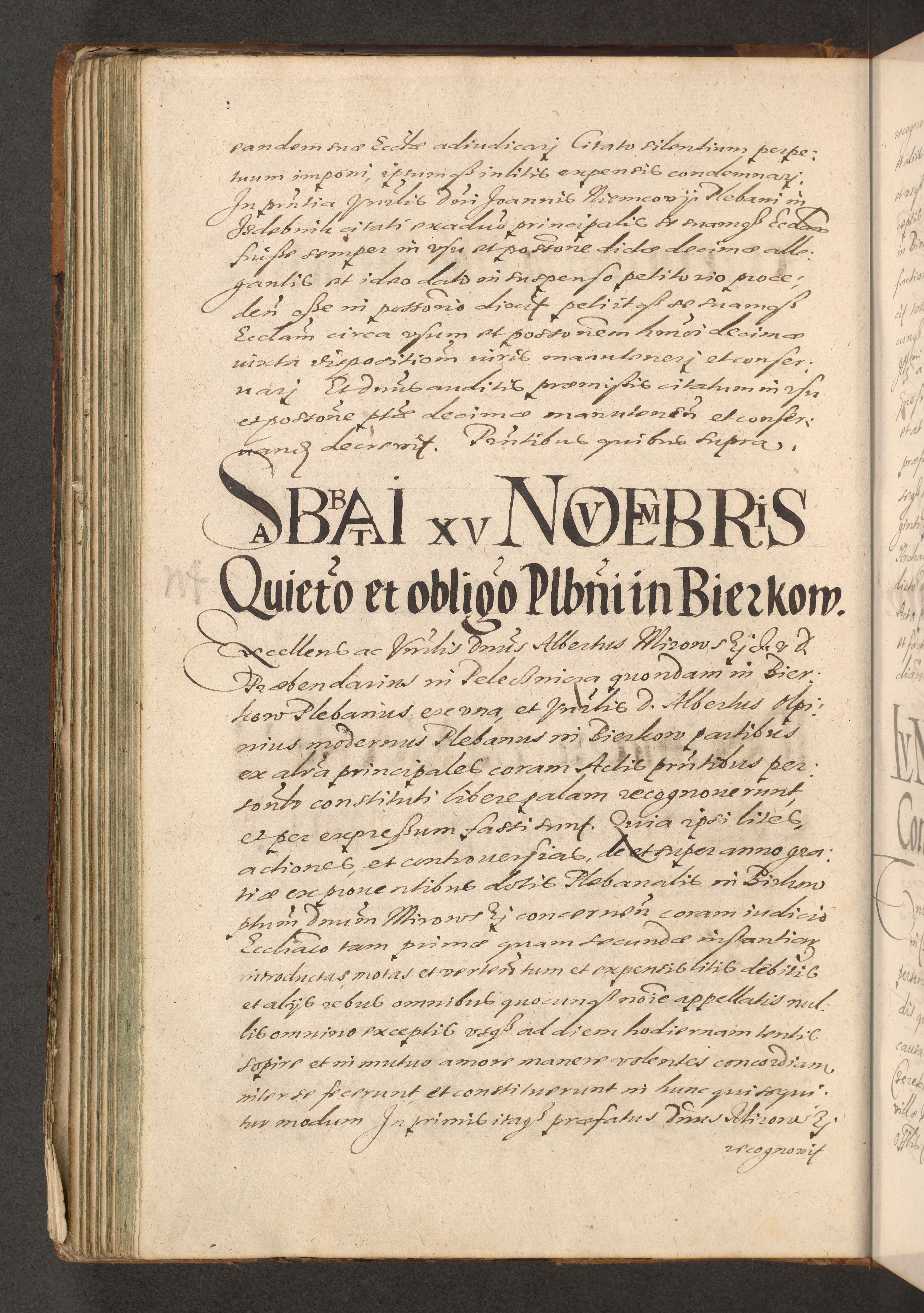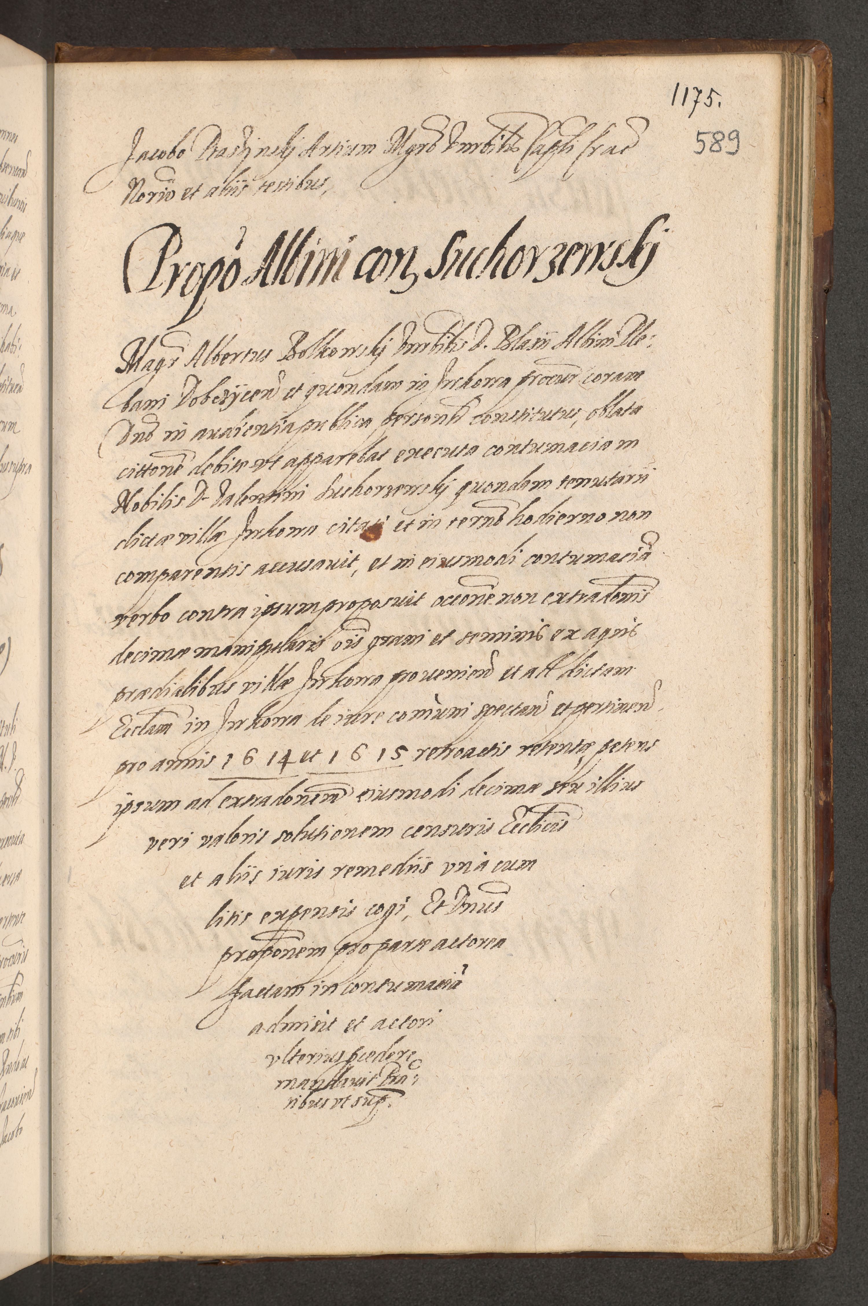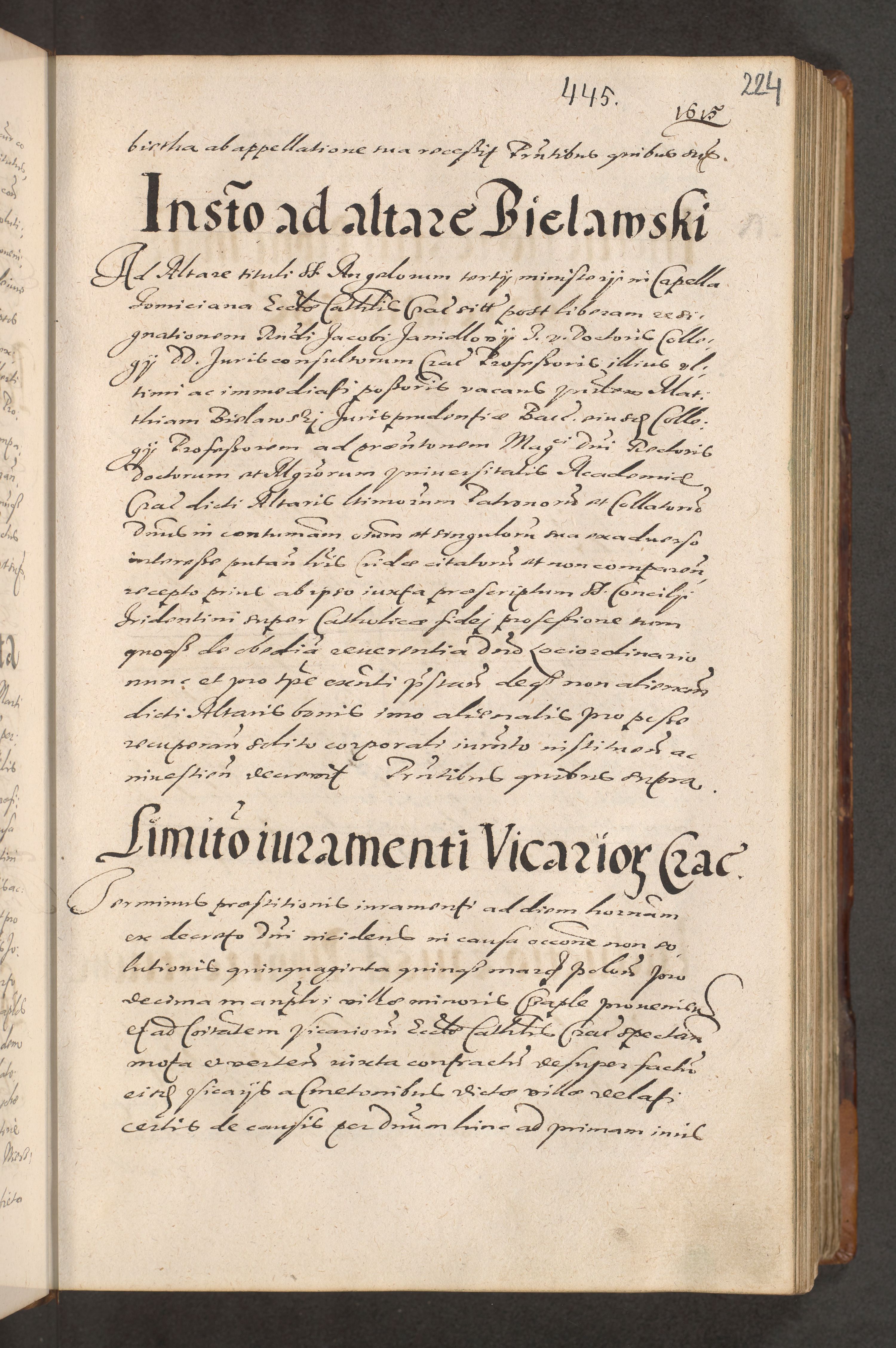 Illustrissimo et Reverendissimo in Christo Patre Domino Domino Petro Tylicki Dei et Apostolice Sedis Gratia Episcopo Cracoviensis Duce Severiensis Acta actorum causarum sententiarum tam interloquutoriarum quam definitivarum decretorum obligationum, quietationum, recognitionum, constitutionum procuratorum etc. etc. coram Admodum Reverendo Domino Thoma Oborski I. V. Doctore Canonico Vicario in Spiritualibus et Officiali generali Cracoviensis in anno Domini Millesimo Sexcentessimo Decimoquarto Cuius Indictio duodecima Pontificus SS. D. N. D. Pauli Divina providentia Papae quinti Anno decimo foeliciter incipiunt