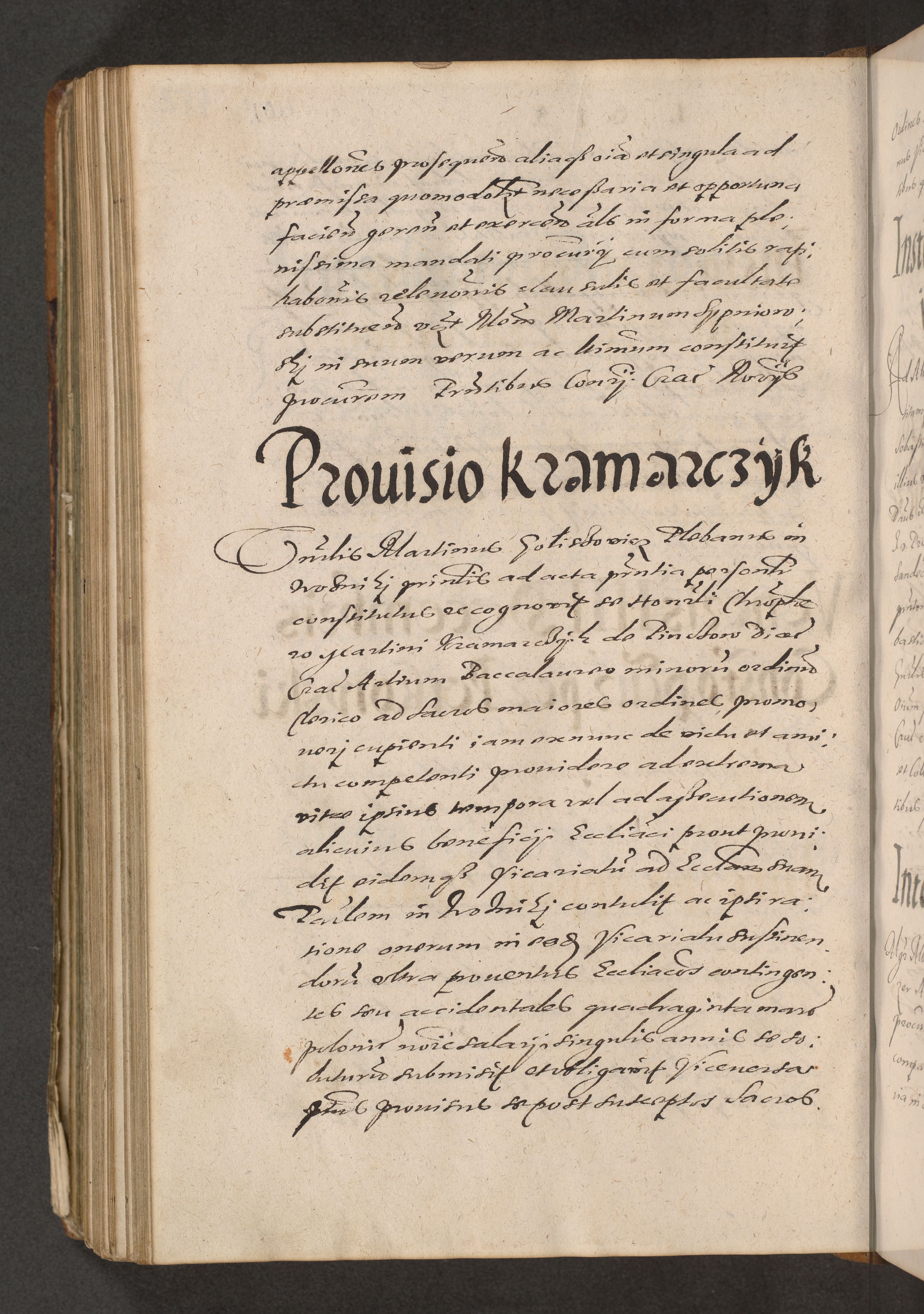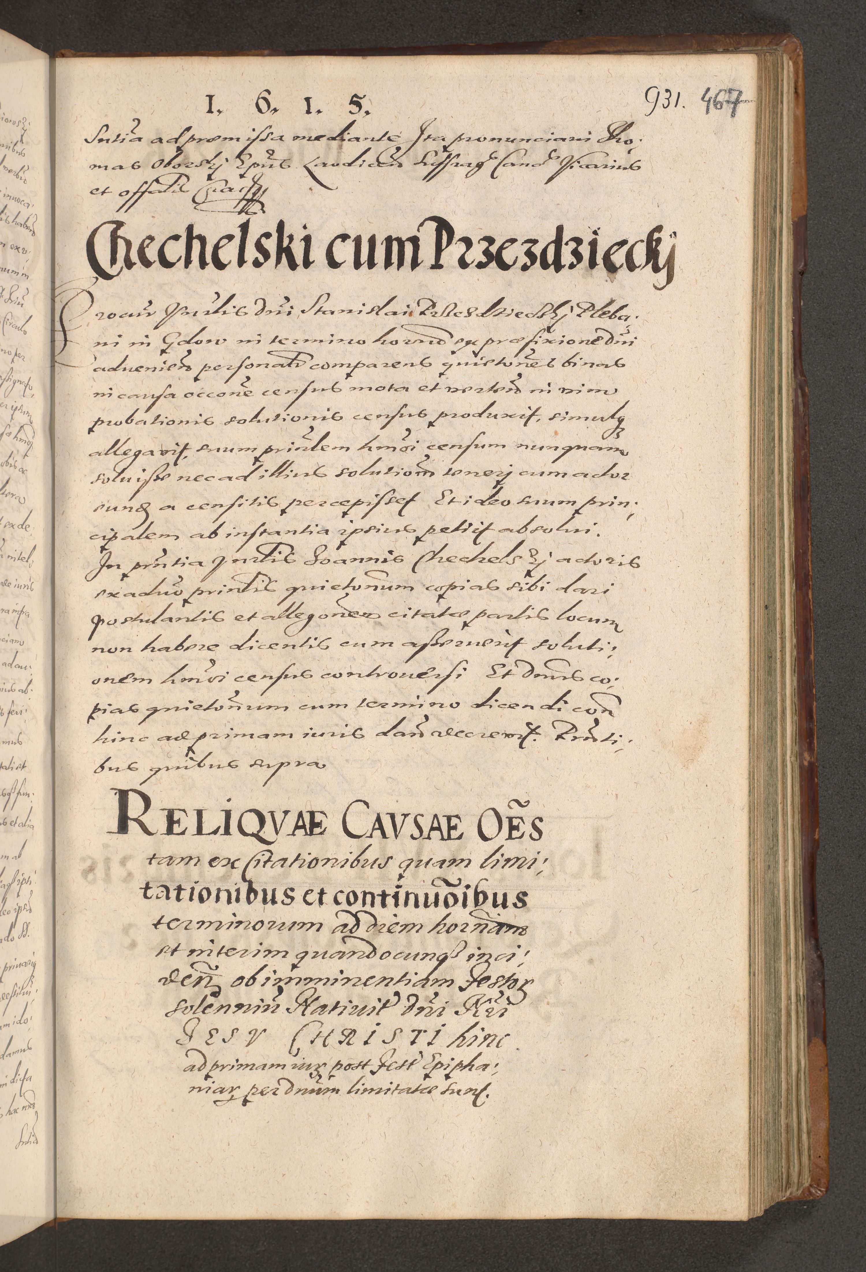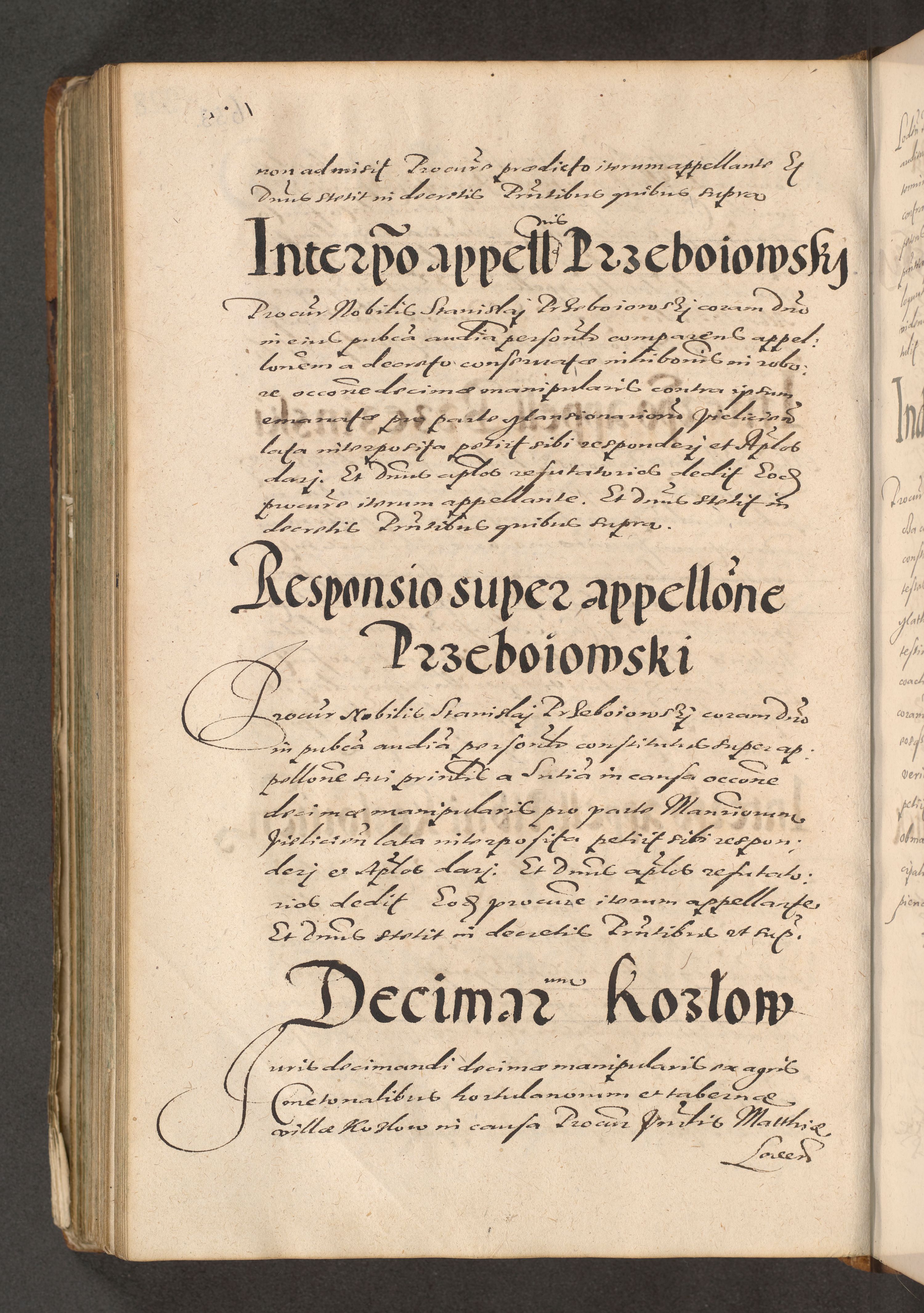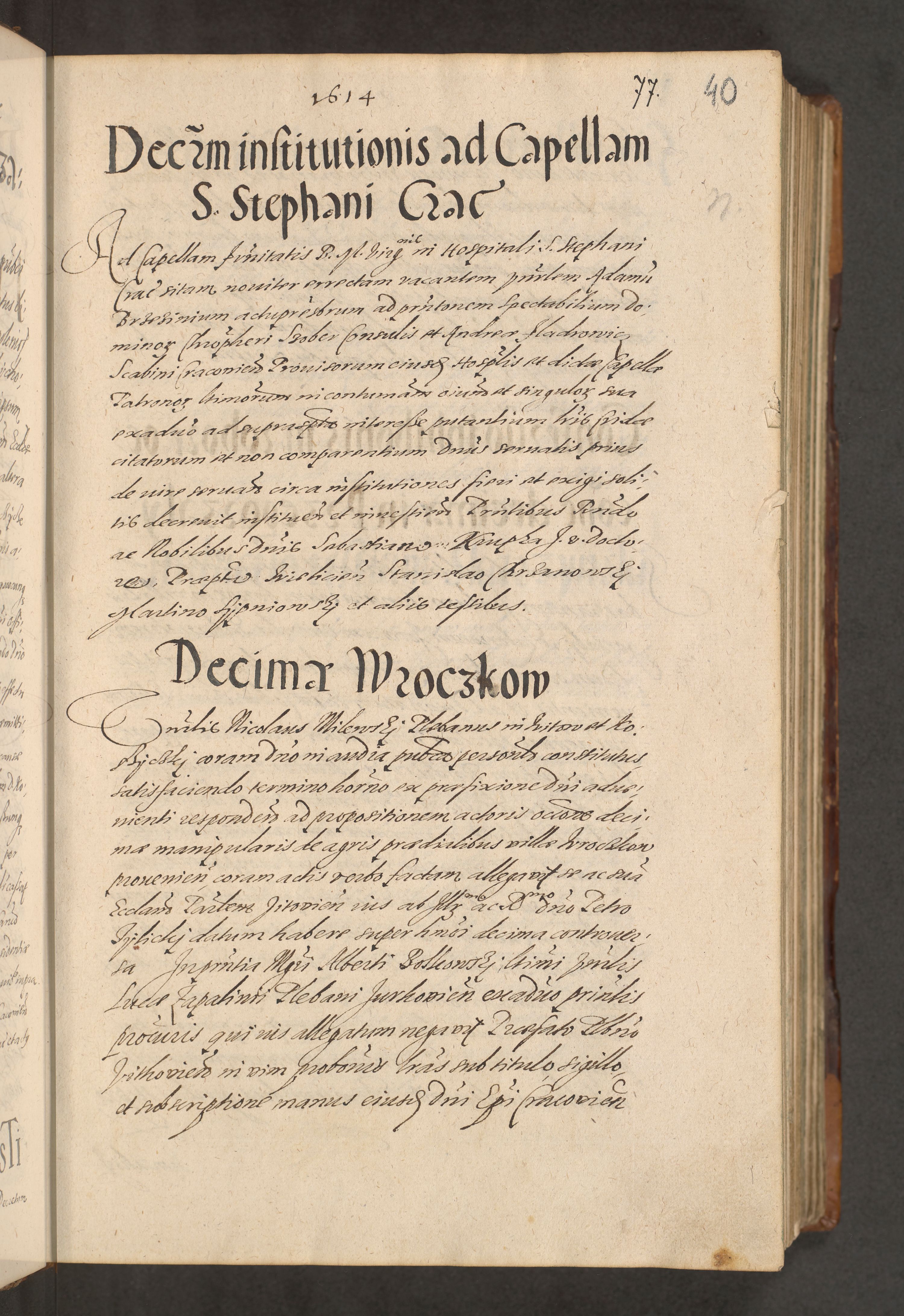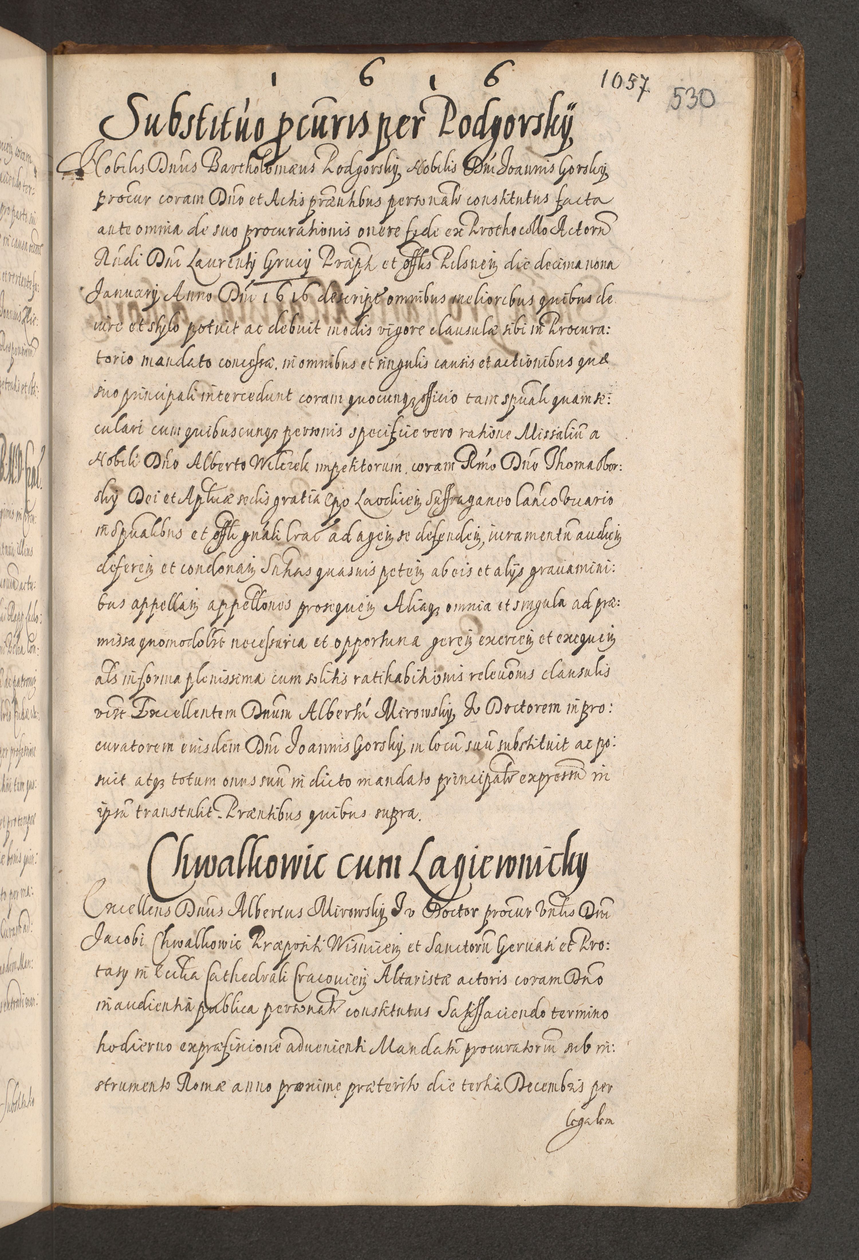 Illustrissimo et Reverendissimo in Christo Patre Domino Domino Petro Tylicki Dei et Apostolice Sedis Gratia Episcopo Cracoviensis Duce Severiensis Acta actorum causarum sententiarum tam interloquutoriarum quam definitivarum decretorum obligationum, quietationum, recognitionum, constitutionum procuratorum etc. etc. coram Admodum Reverendo Domino Thoma Oborski I. V. Doctore Canonico Vicario in Spiritualibus et Officiali generali Cracoviensis in anno Domini Millesimo Sexcentessimo Decimoquarto Cuius Indictio duodecima Pontificus SS. D. N. D. Pauli Divina providentia Papae quinti Anno decimo foeliciter incipiunt