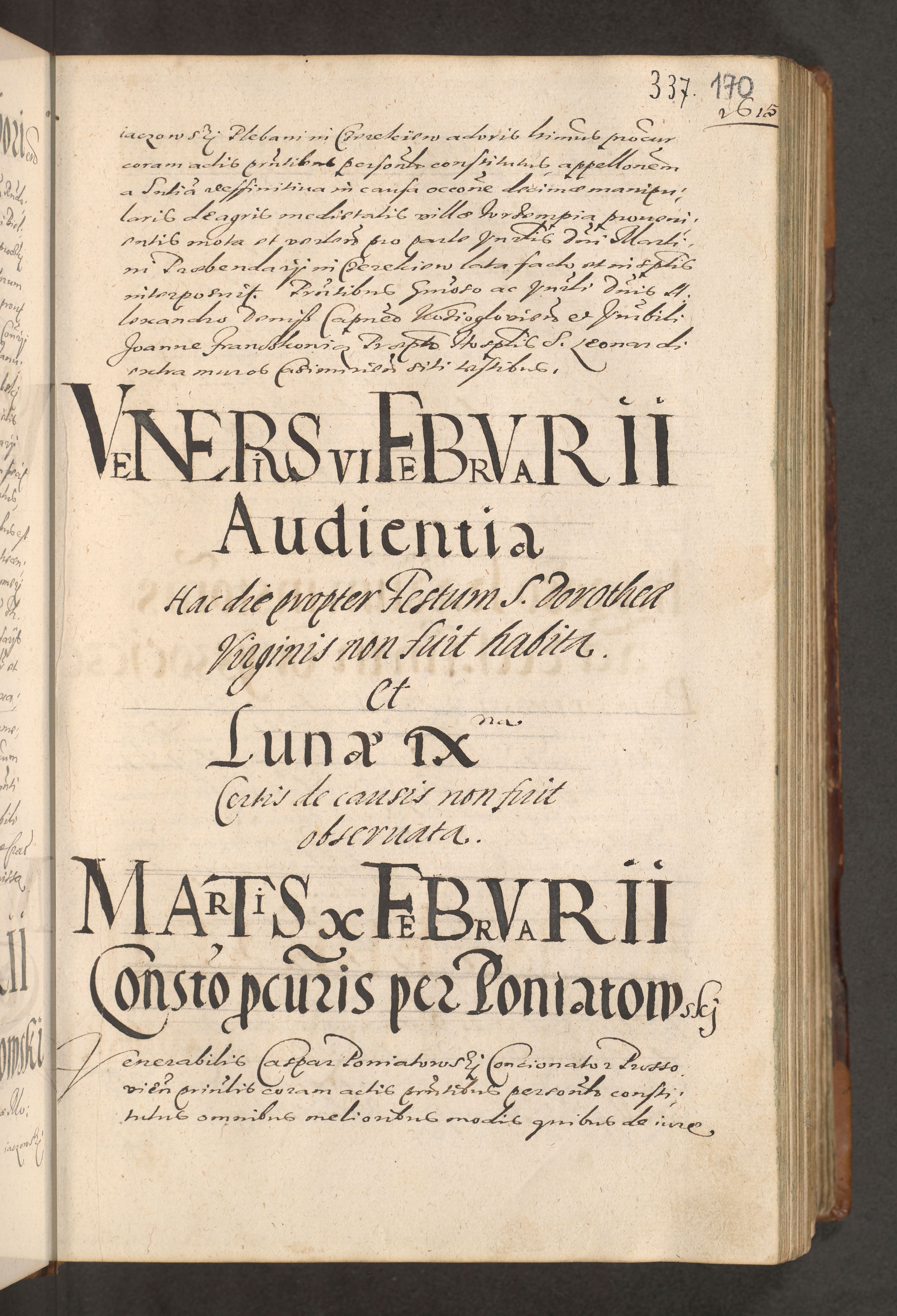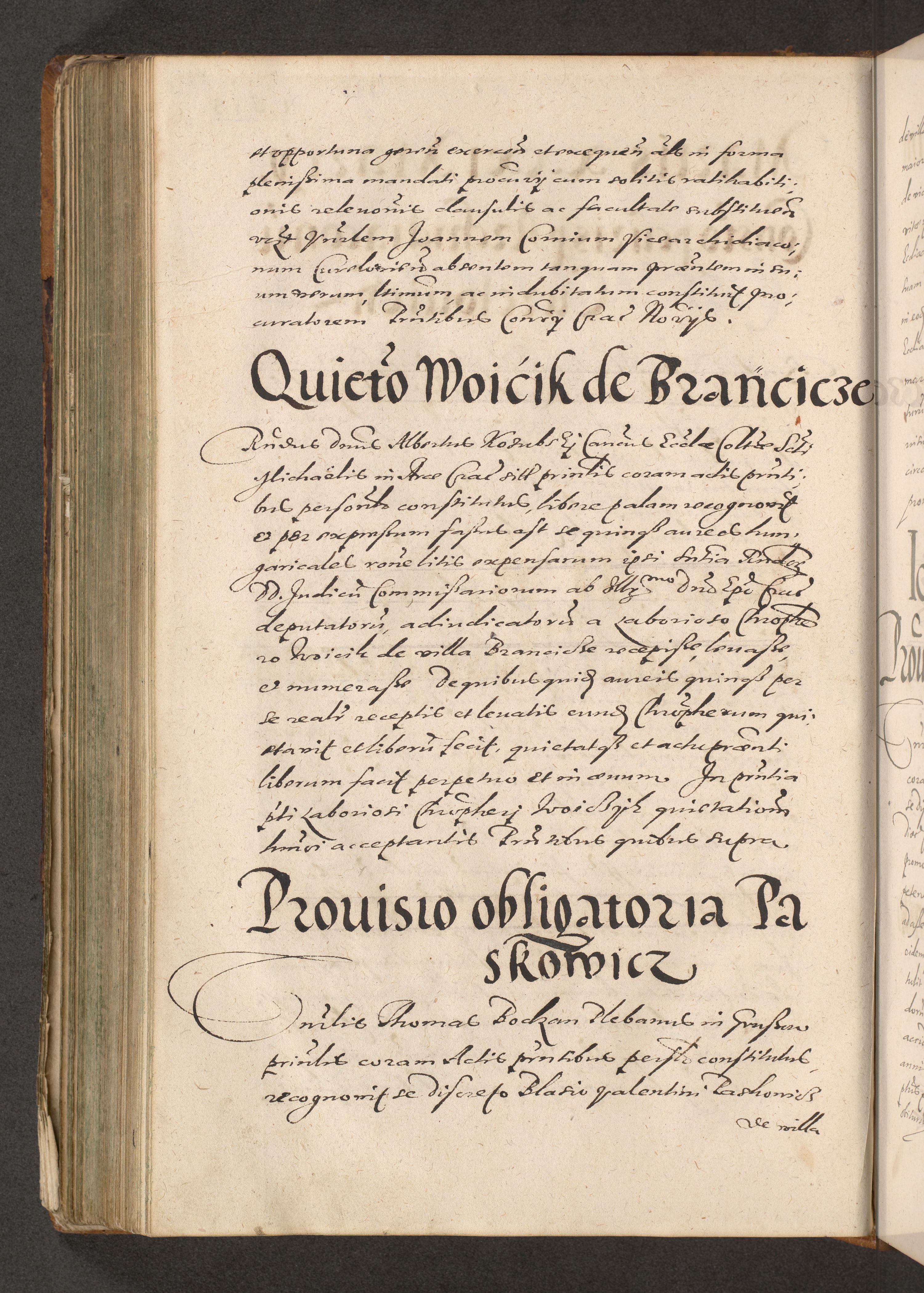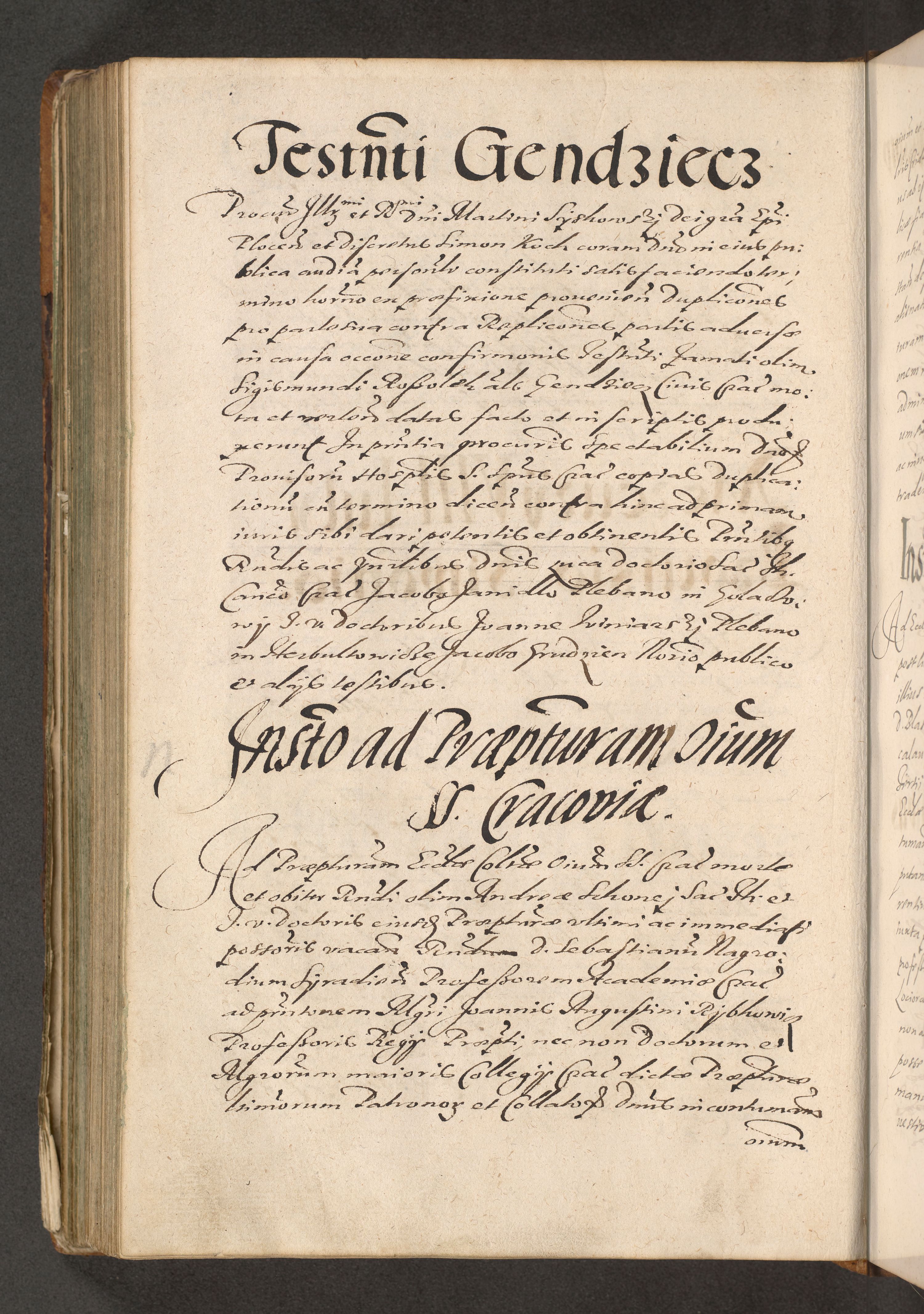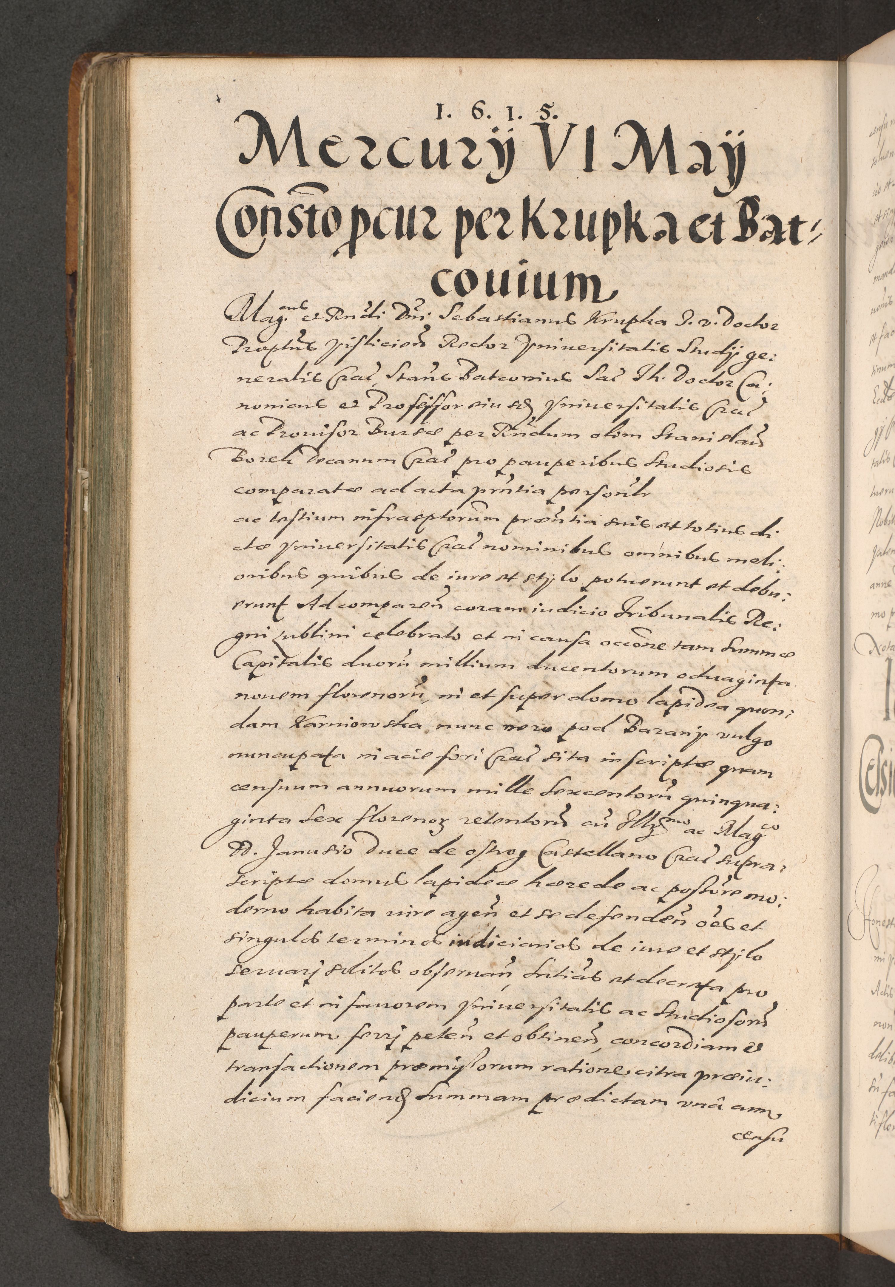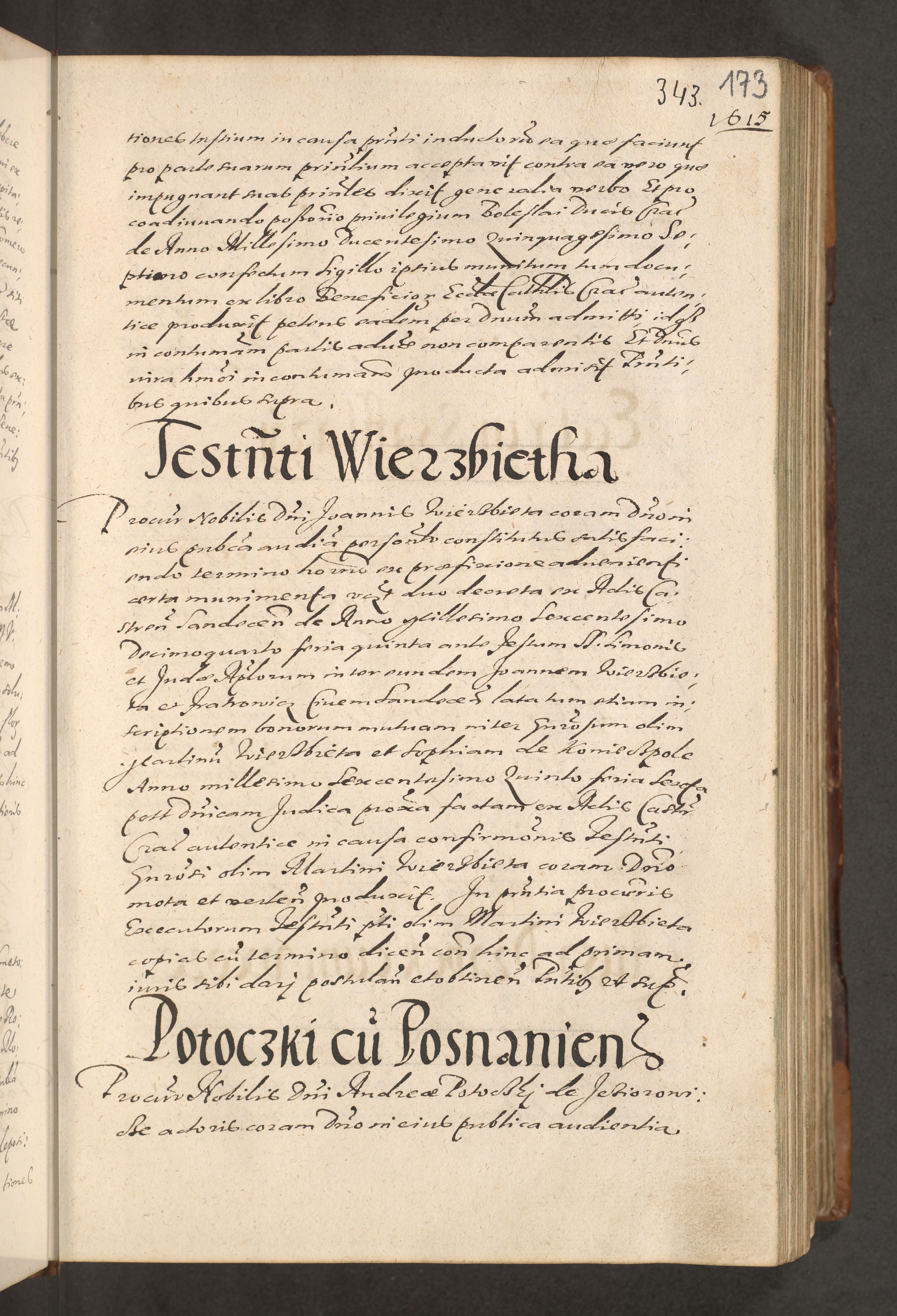 Illustrissimo et Reverendissimo in Christo Patre Domino Domino Petro Tylicki Dei et Apostolice Sedis Gratia Episcopo Cracoviensis Duce Severiensis Acta actorum causarum sententiarum tam interloquutoriarum quam definitivarum decretorum obligationum, quietationum, recognitionum, constitutionum procuratorum etc. etc. coram Admodum Reverendo Domino Thoma Oborski I. V. Doctore Canonico Vicario in Spiritualibus et Officiali generali Cracoviensis in anno Domini Millesimo Sexcentessimo Decimoquarto Cuius Indictio duodecima Pontificus SS. D. N. D. Pauli Divina providentia Papae quinti Anno decimo foeliciter incipiunt