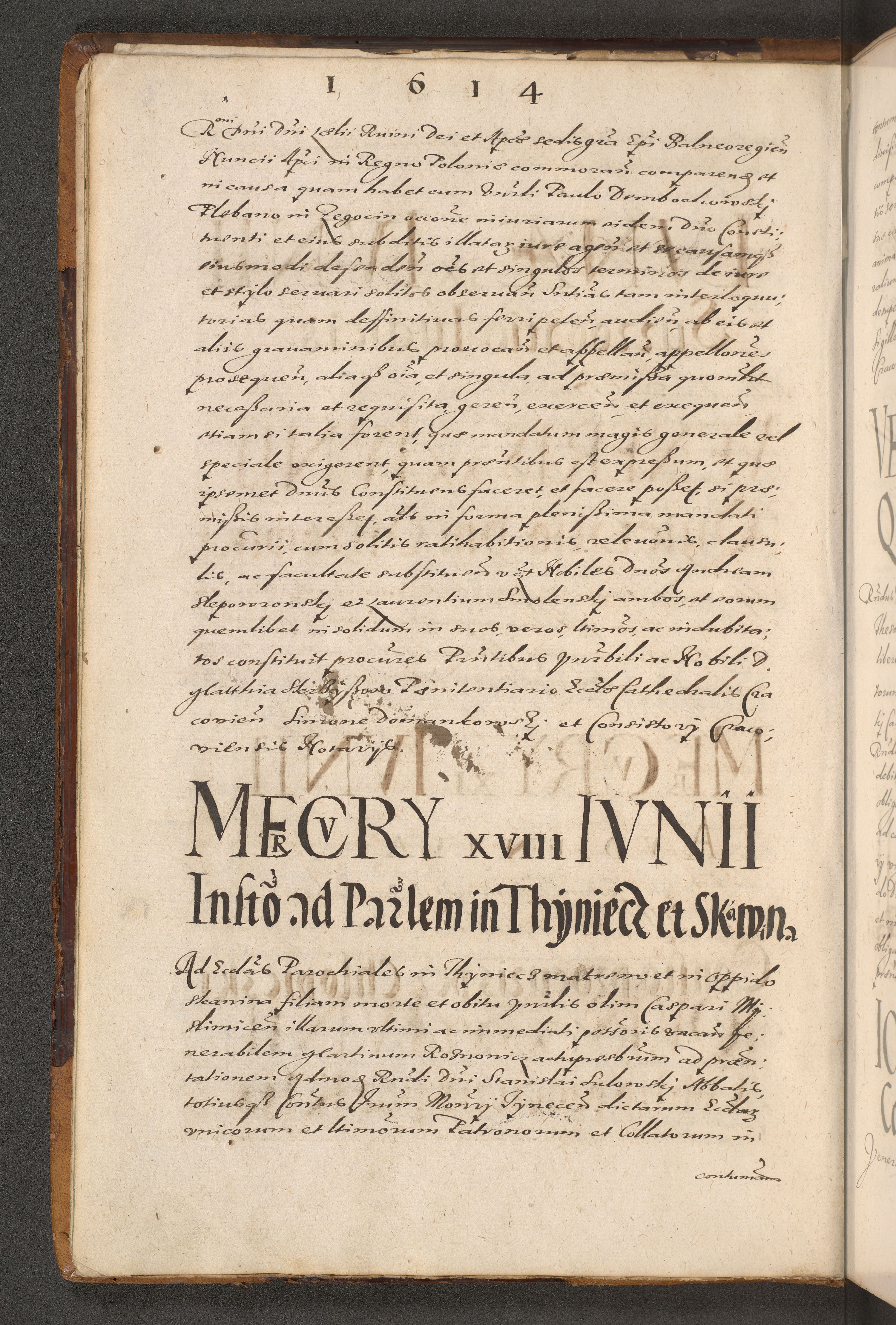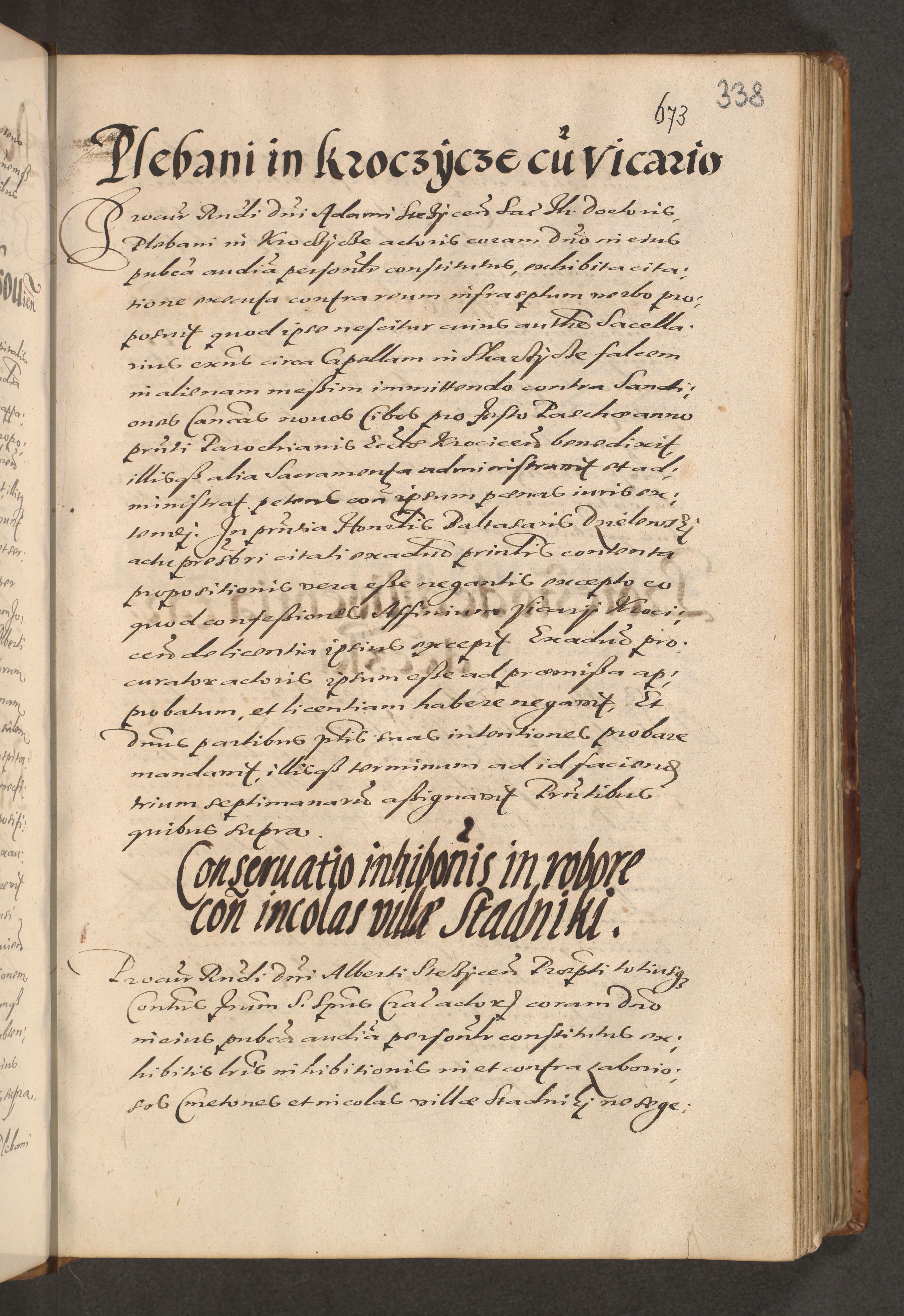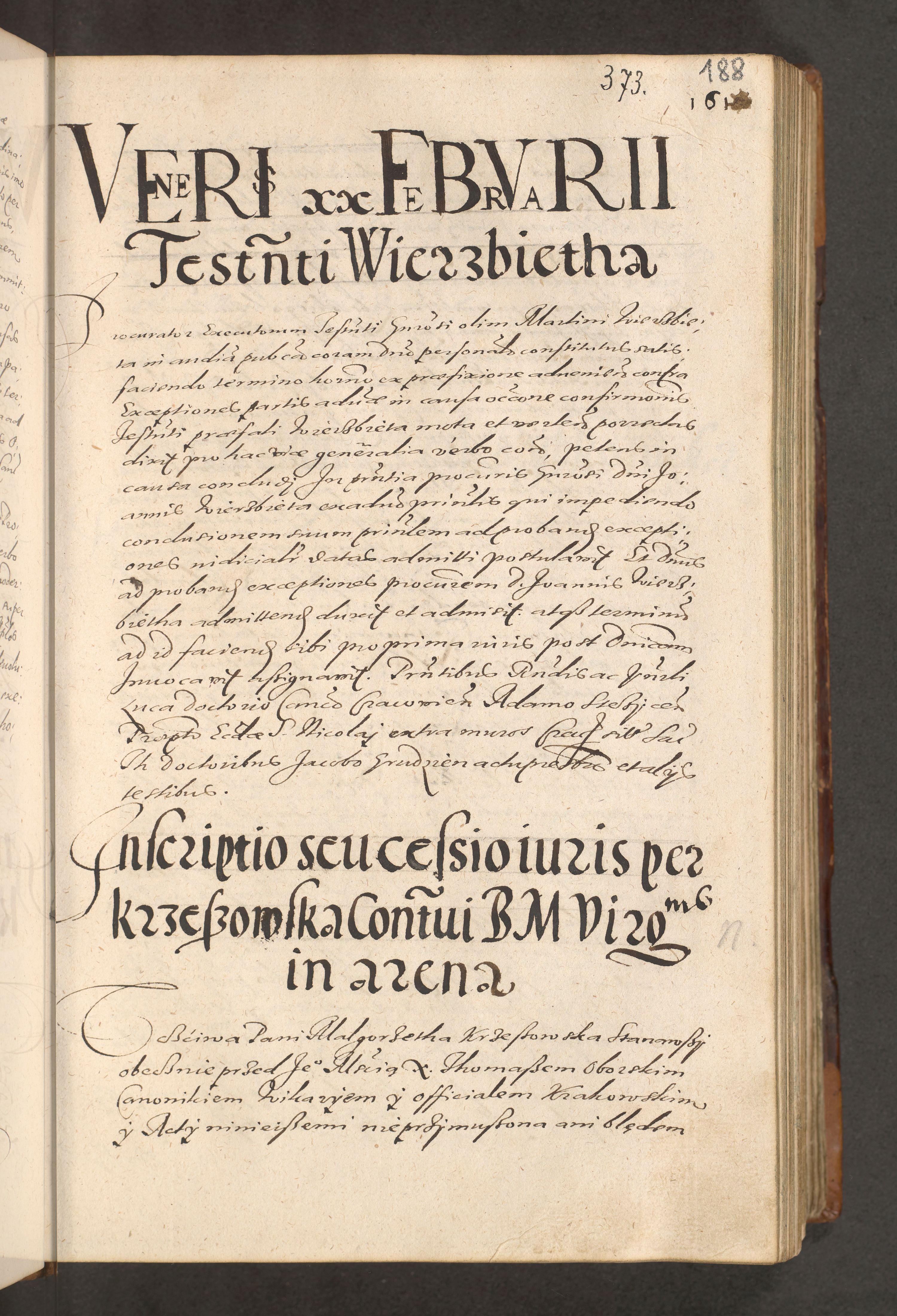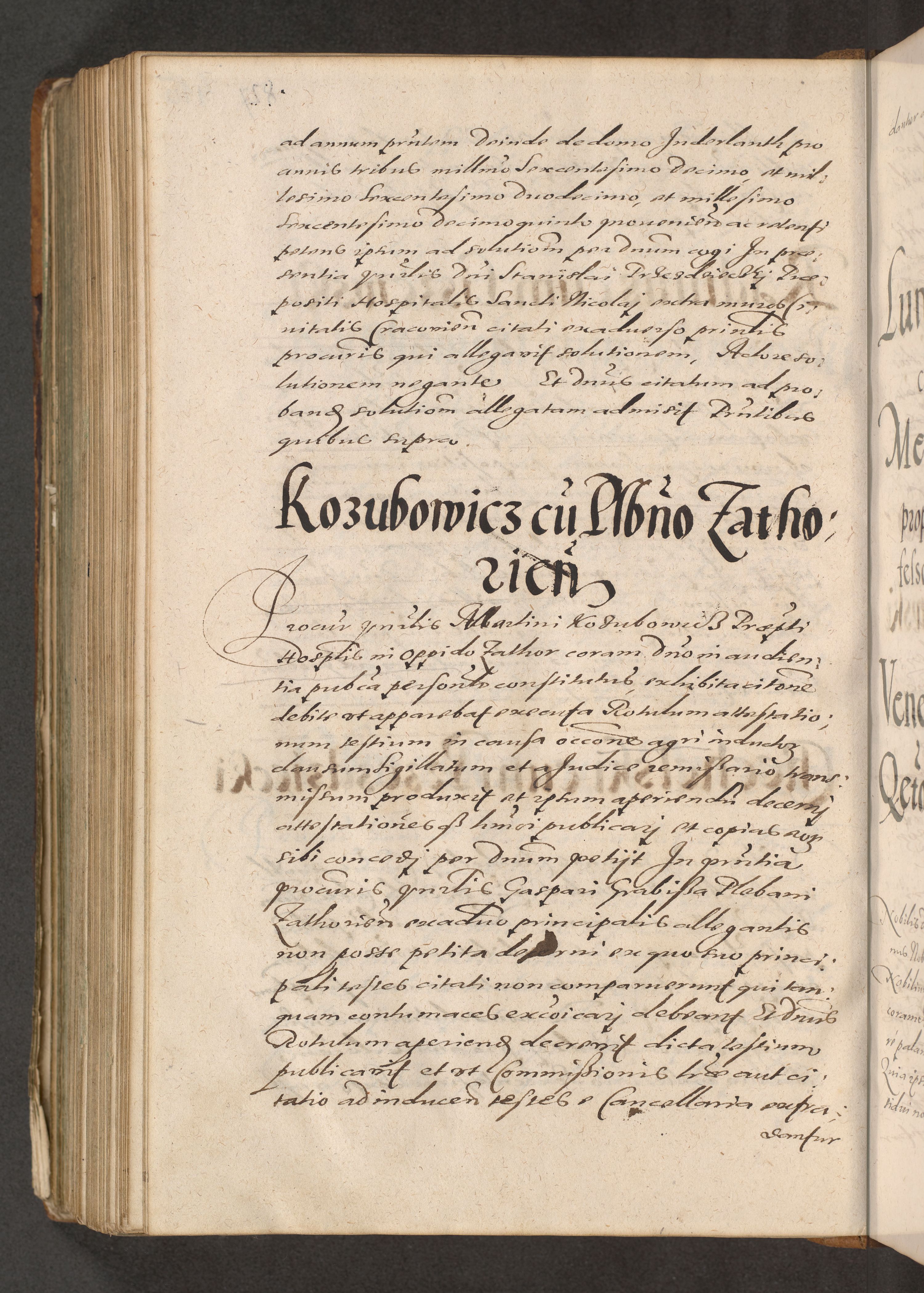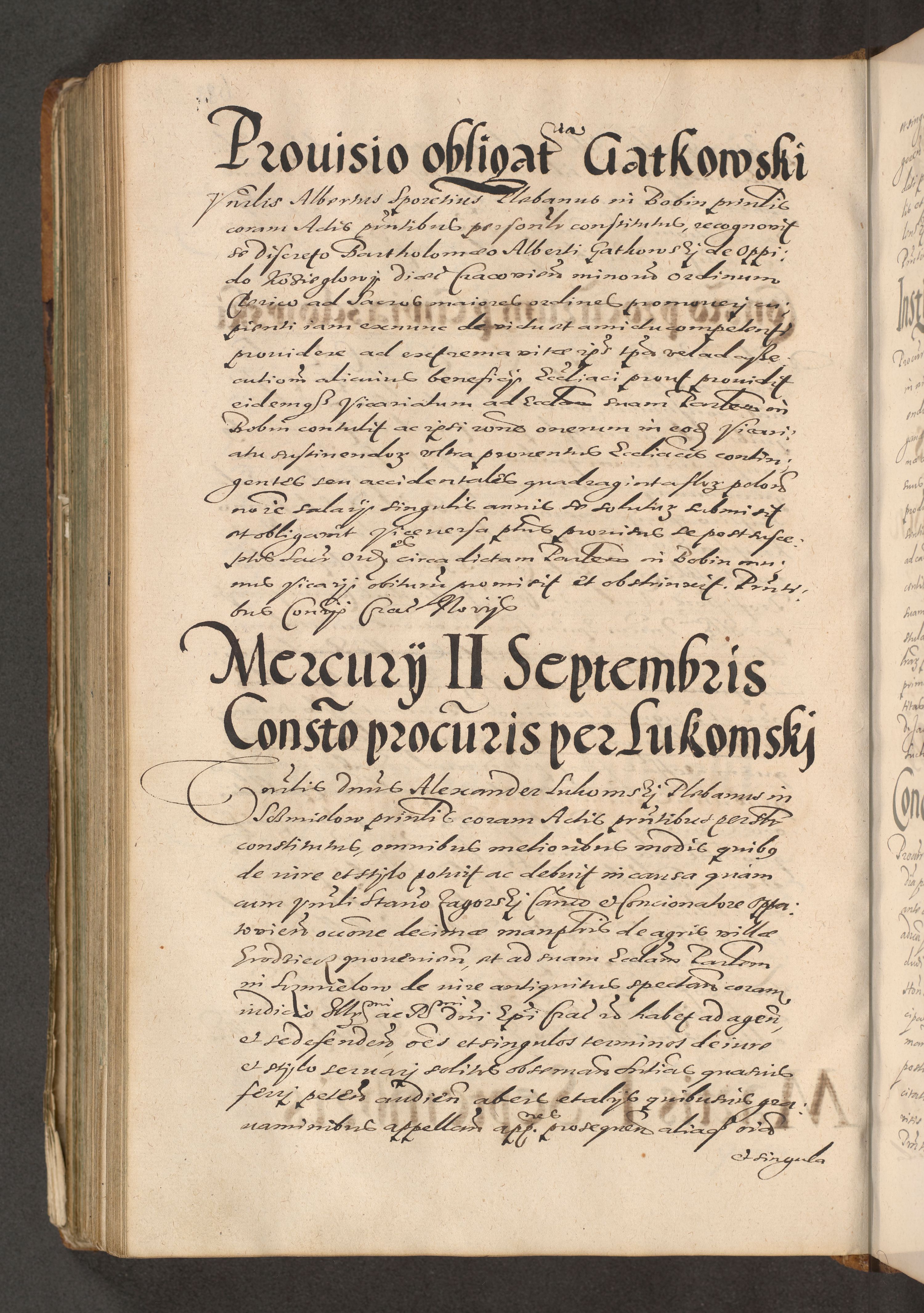 Illustrissimo et Reverendissimo in Christo Patre Domino Domino Petro Tylicki Dei et Apostolice Sedis Gratia Episcopo Cracoviensis Duce Severiensis Acta actorum causarum sententiarum tam interloquutoriarum quam definitivarum decretorum obligationum, quietationum, recognitionum, constitutionum procuratorum etc. etc. coram Admodum Reverendo Domino Thoma Oborski I. V. Doctore Canonico Vicario in Spiritualibus et Officiali generali Cracoviensis in anno Domini Millesimo Sexcentessimo Decimoquarto Cuius Indictio duodecima Pontificus SS. D. N. D. Pauli Divina providentia Papae quinti Anno decimo foeliciter incipiunt