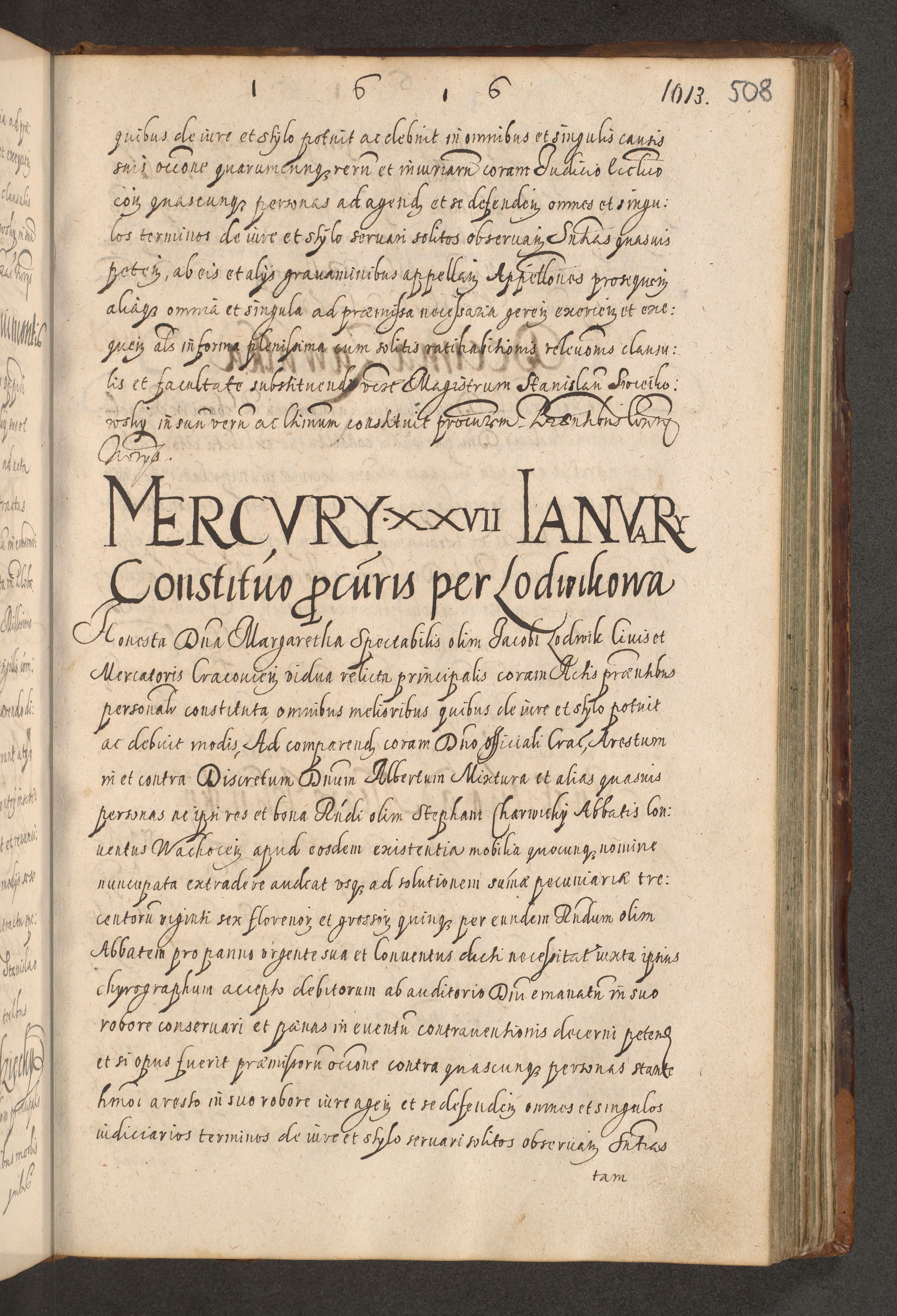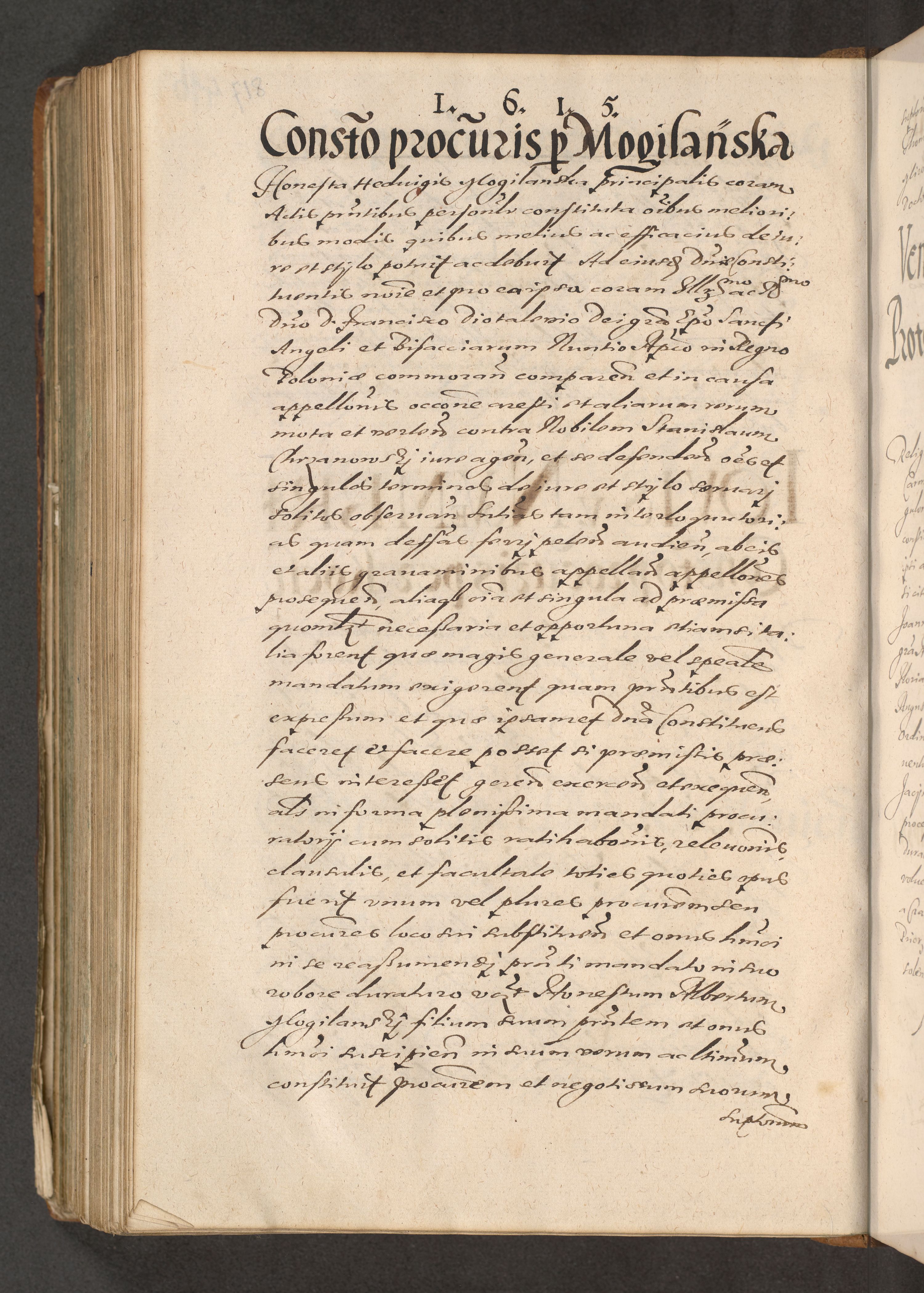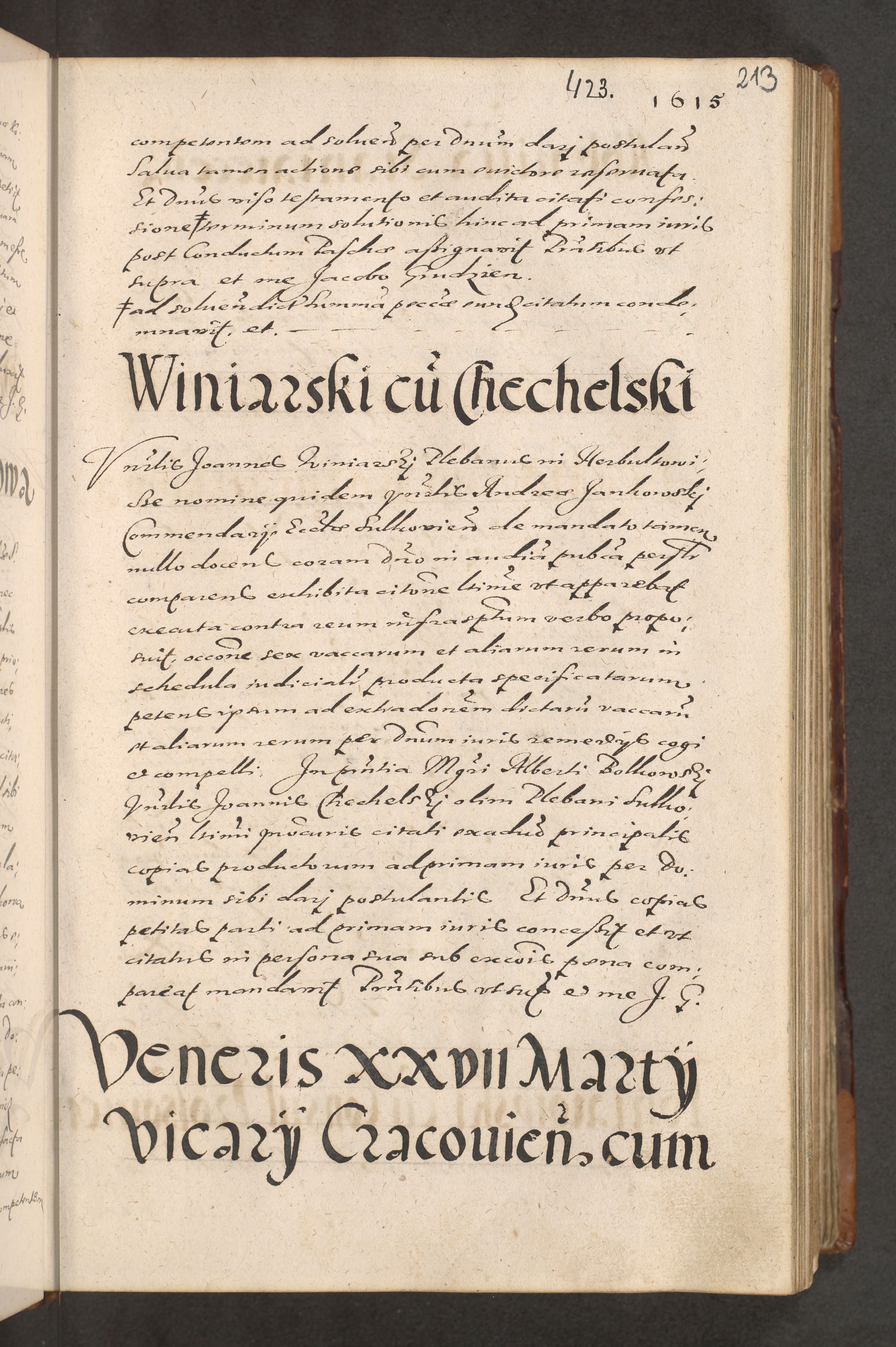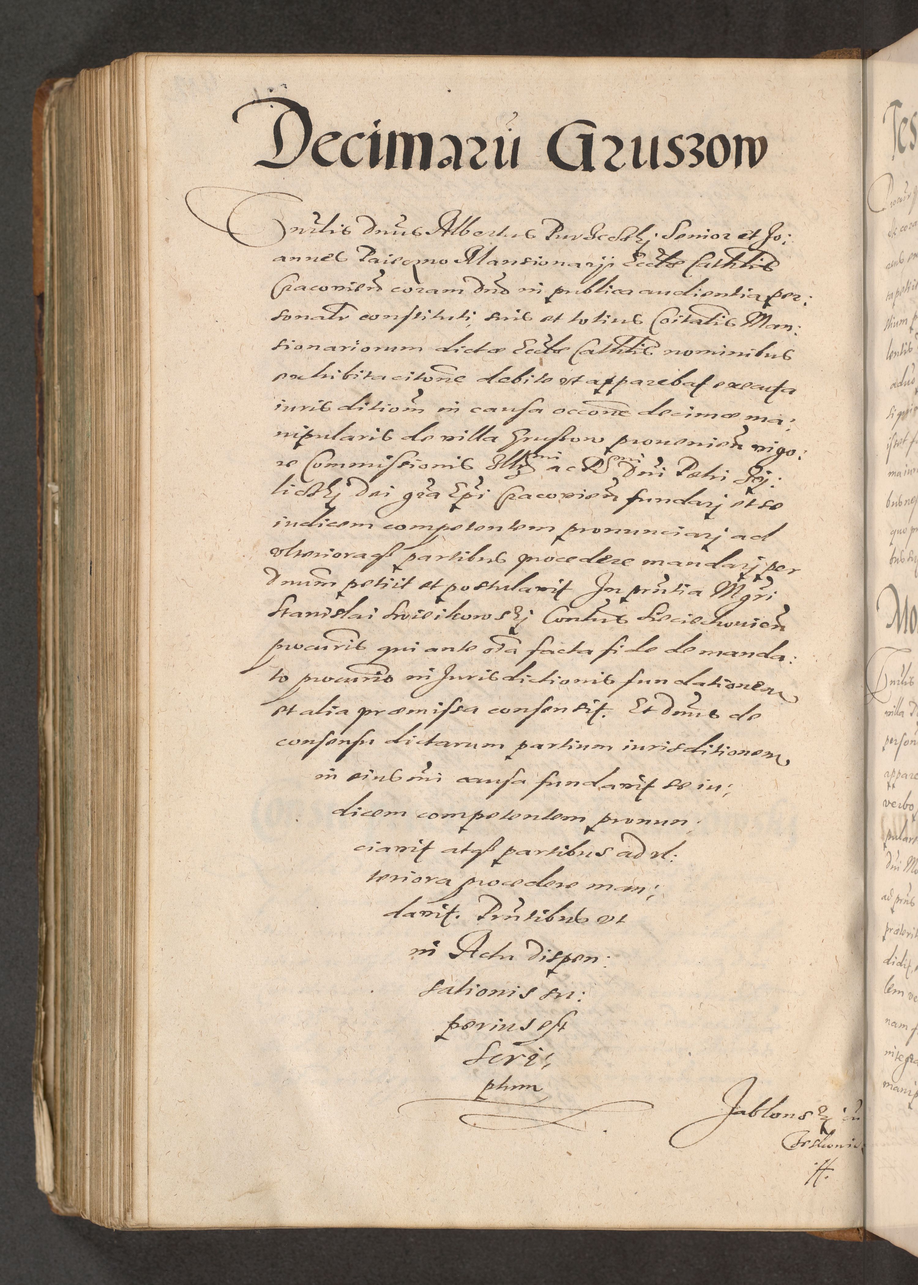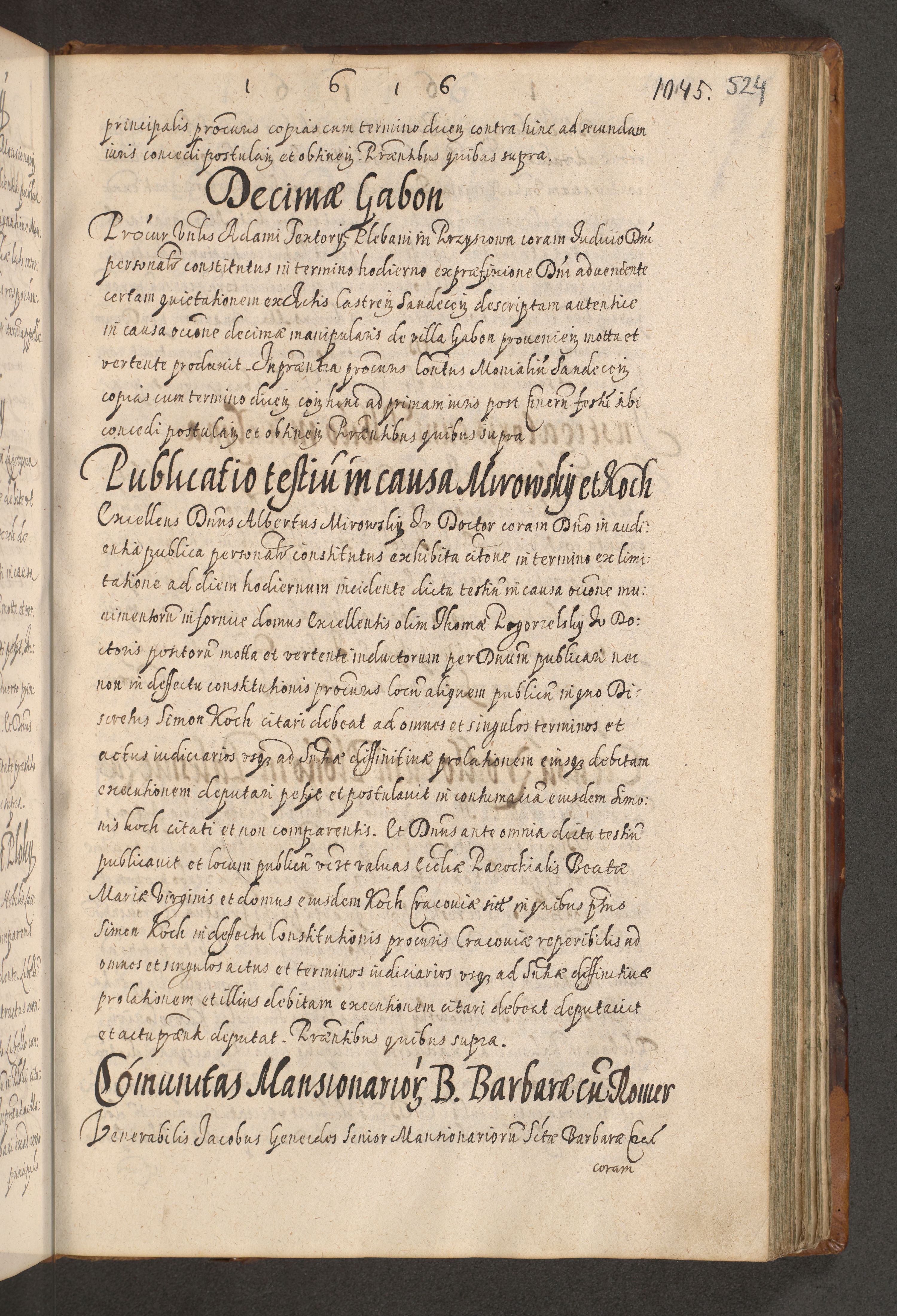 Illustrissimo et Reverendissimo in Christo Patre Domino Domino Petro Tylicki Dei et Apostolice Sedis Gratia Episcopo Cracoviensis Duce Severiensis Acta actorum causarum sententiarum tam interloquutoriarum quam definitivarum decretorum obligationum, quietationum, recognitionum, constitutionum procuratorum etc. etc. coram Admodum Reverendo Domino Thoma Oborski I. V. Doctore Canonico Vicario in Spiritualibus et Officiali generali Cracoviensis in anno Domini Millesimo Sexcentessimo Decimoquarto Cuius Indictio duodecima Pontificus SS. D. N. D. Pauli Divina providentia Papae quinti Anno decimo foeliciter incipiunt