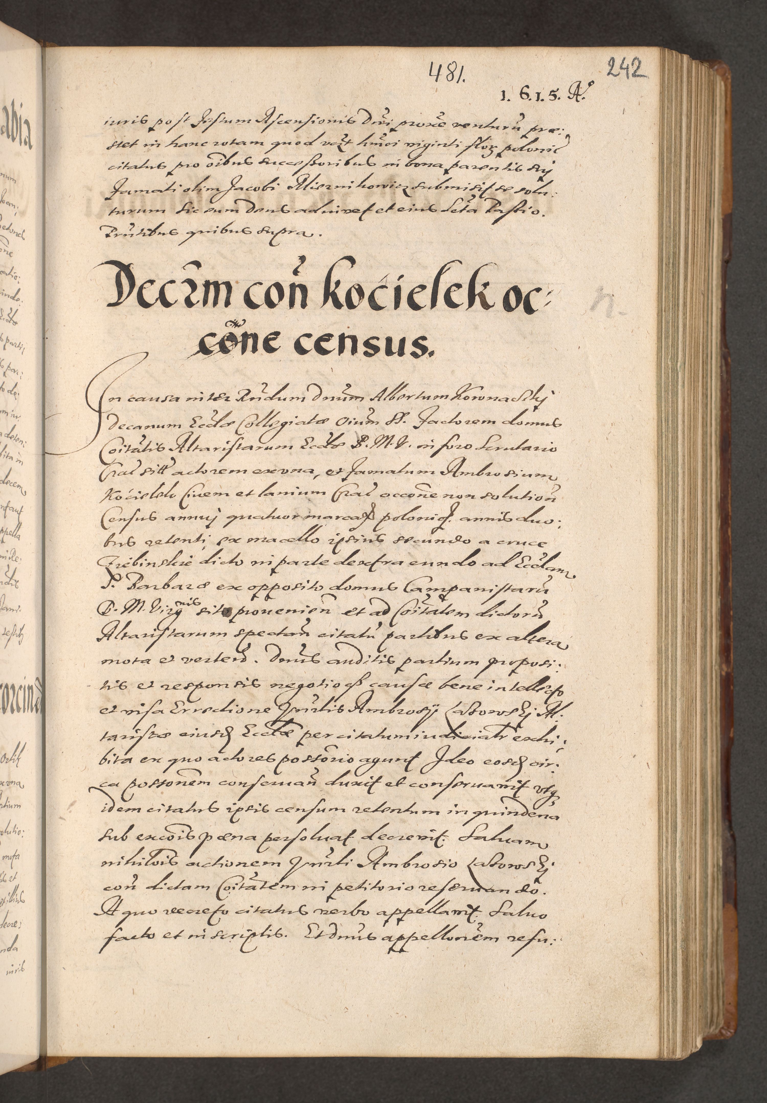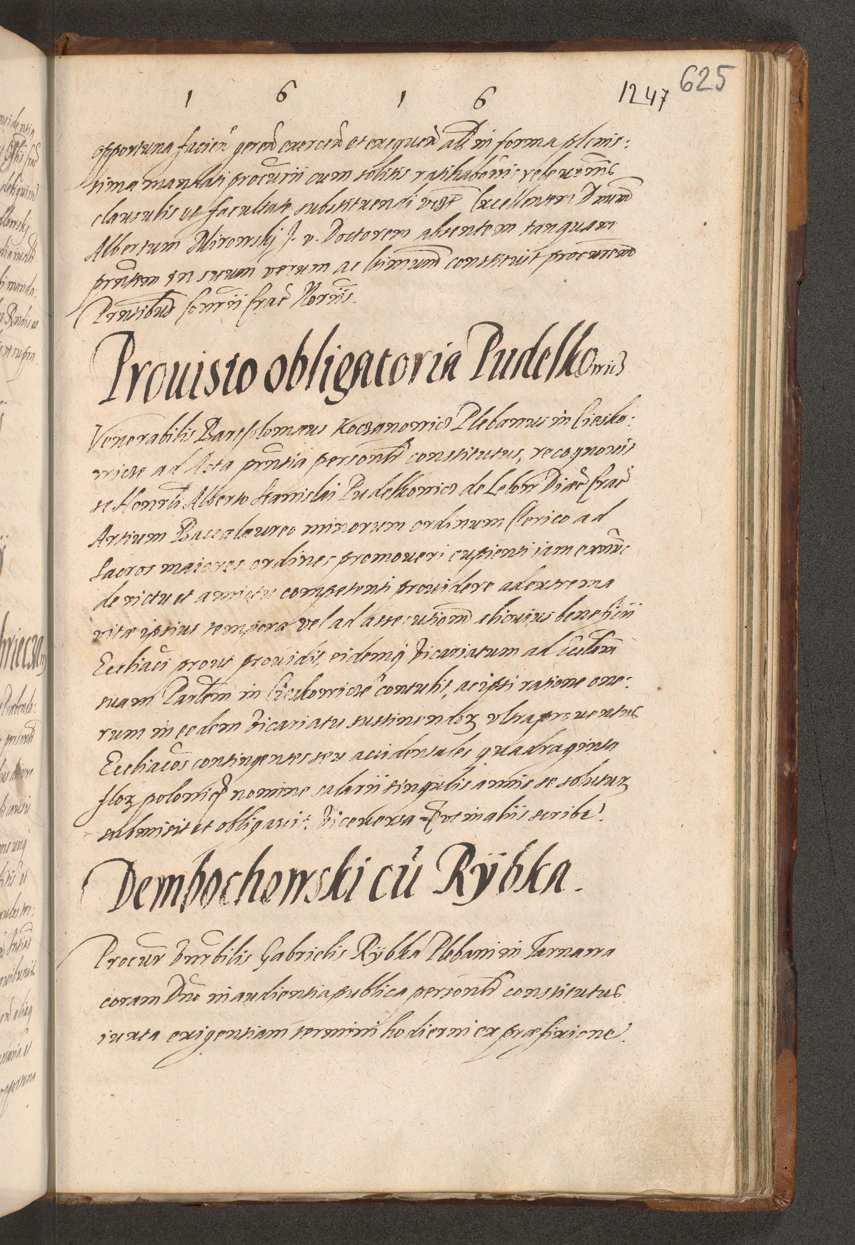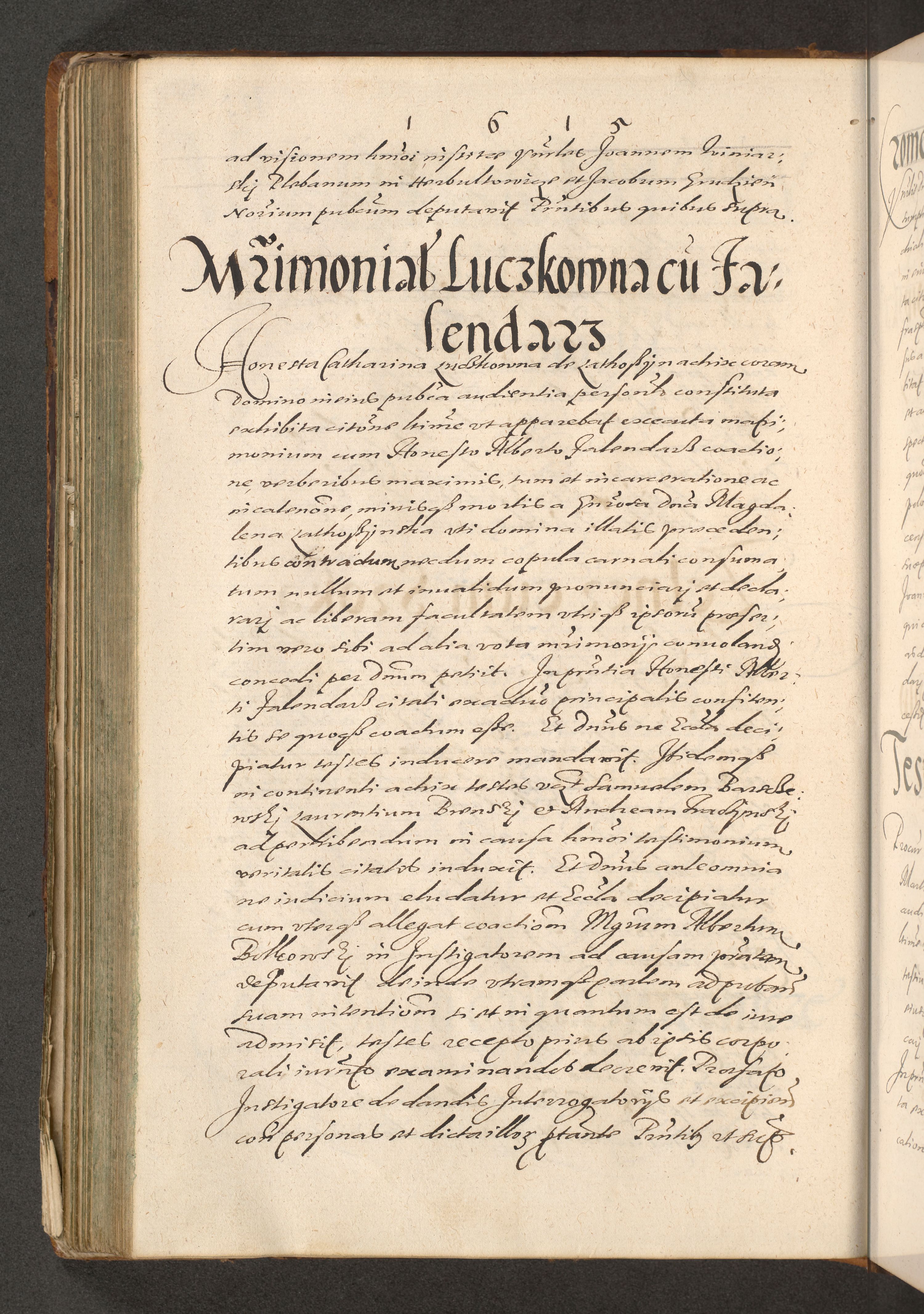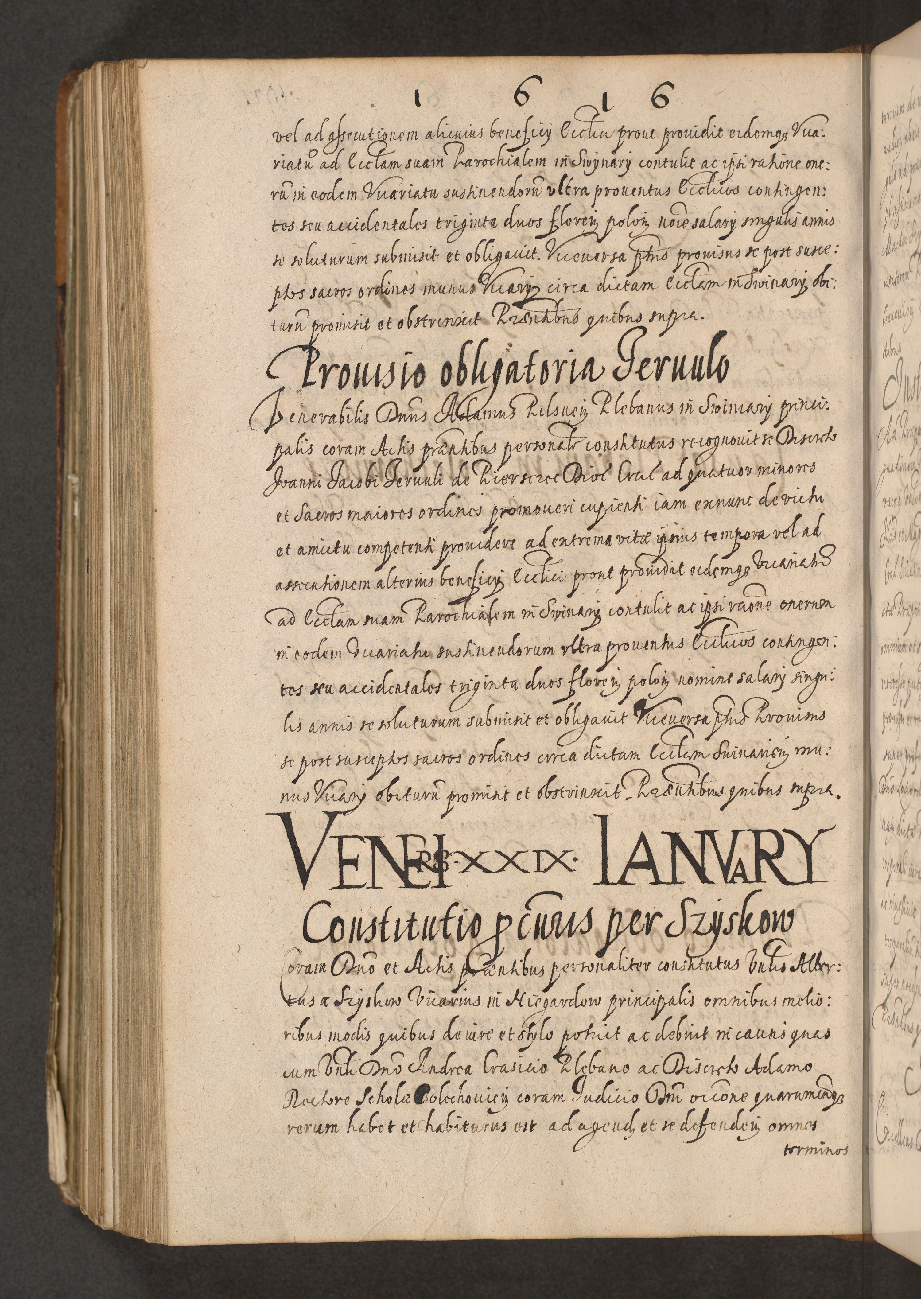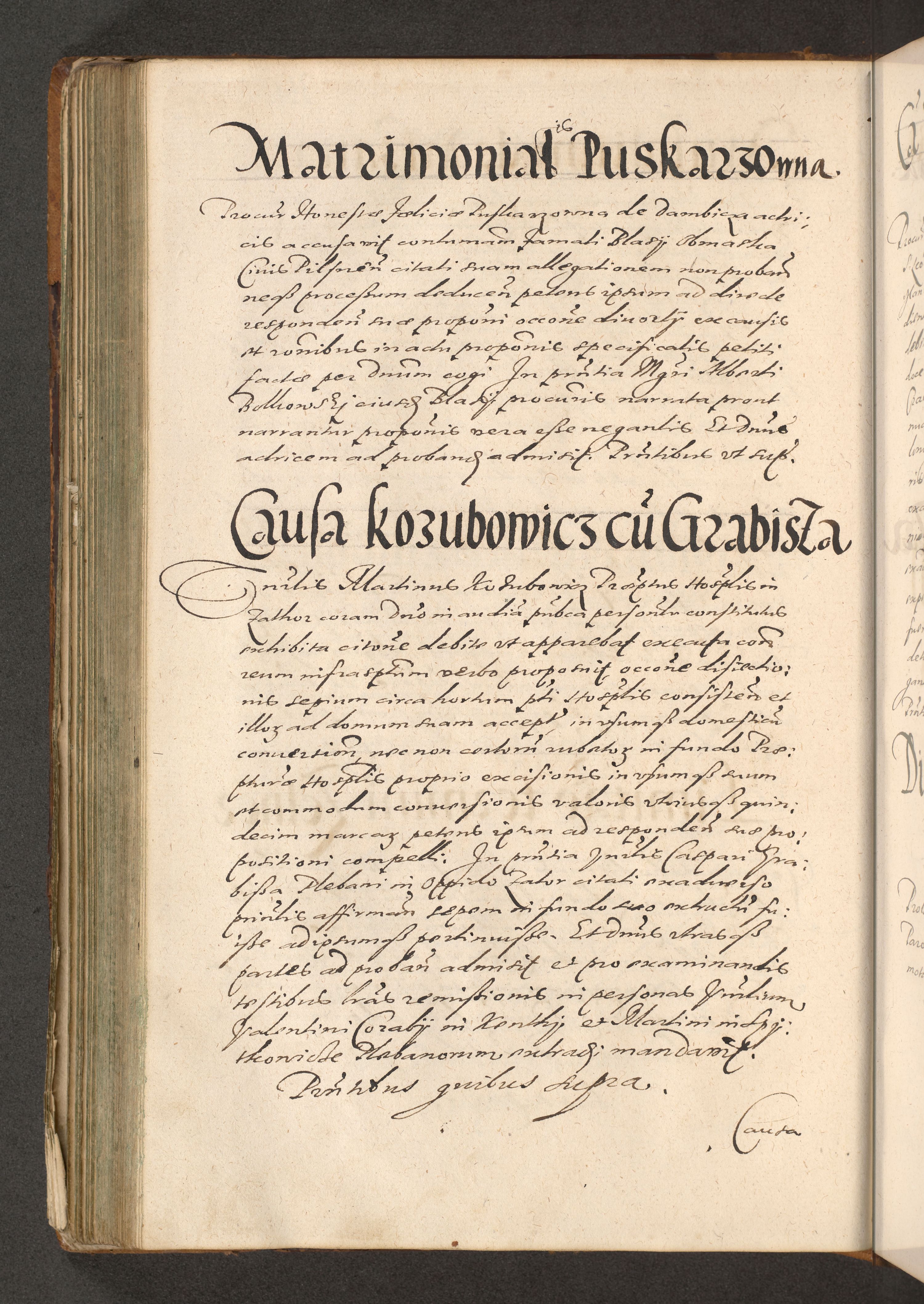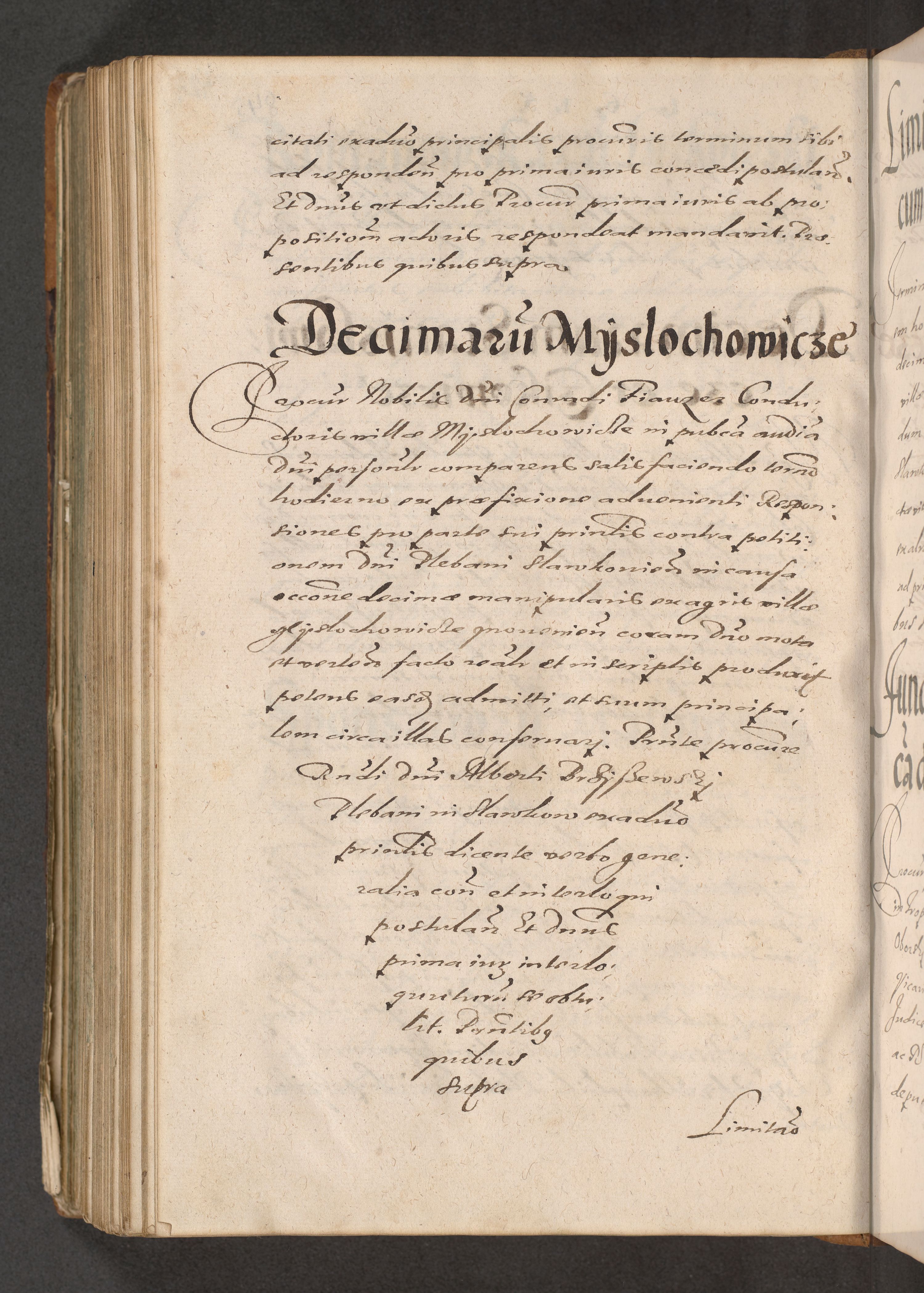 Illustrissimo et Reverendissimo in Christo Patre Domino Domino Petro Tylicki Dei et Apostolice Sedis Gratia Episcopo Cracoviensis Duce Severiensis Acta actorum causarum sententiarum tam interloquutoriarum quam definitivarum decretorum obligationum, quietationum, recognitionum, constitutionum procuratorum etc. etc. coram Admodum Reverendo Domino Thoma Oborski I. V. Doctore Canonico Vicario in Spiritualibus et Officiali generali Cracoviensis in anno Domini Millesimo Sexcentessimo Decimoquarto Cuius Indictio duodecima Pontificus SS. D. N. D. Pauli Divina providentia Papae quinti Anno decimo foeliciter incipiunt