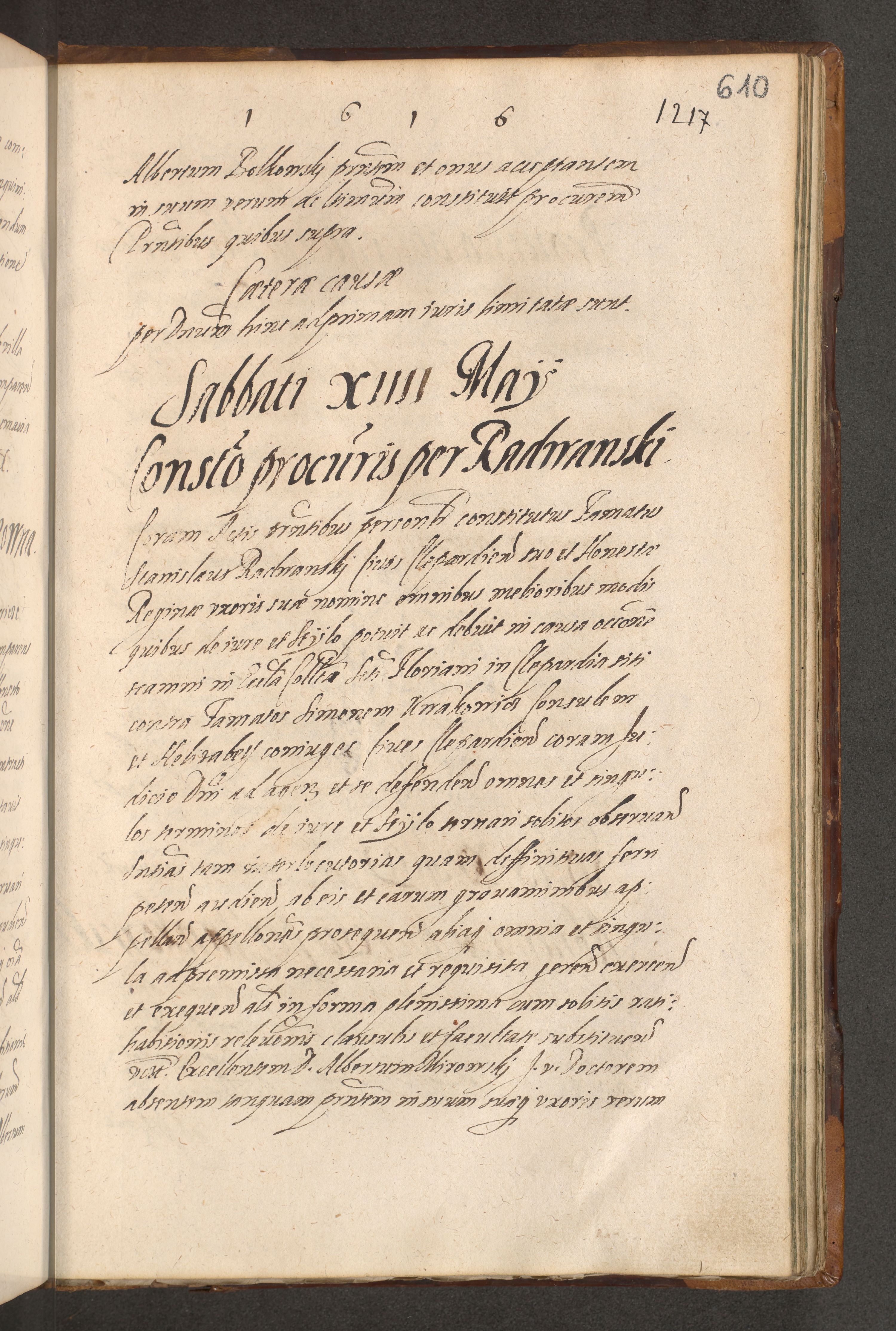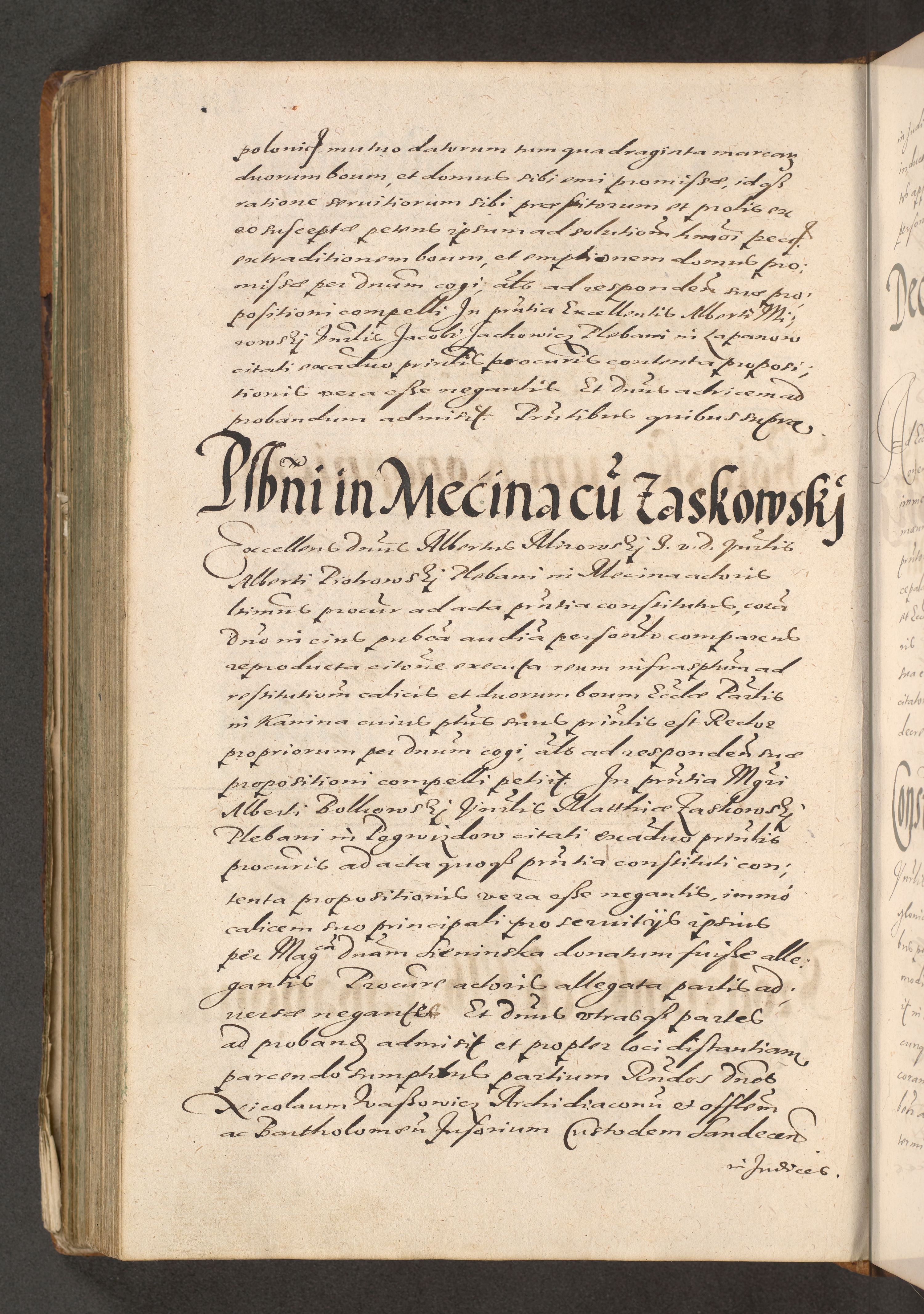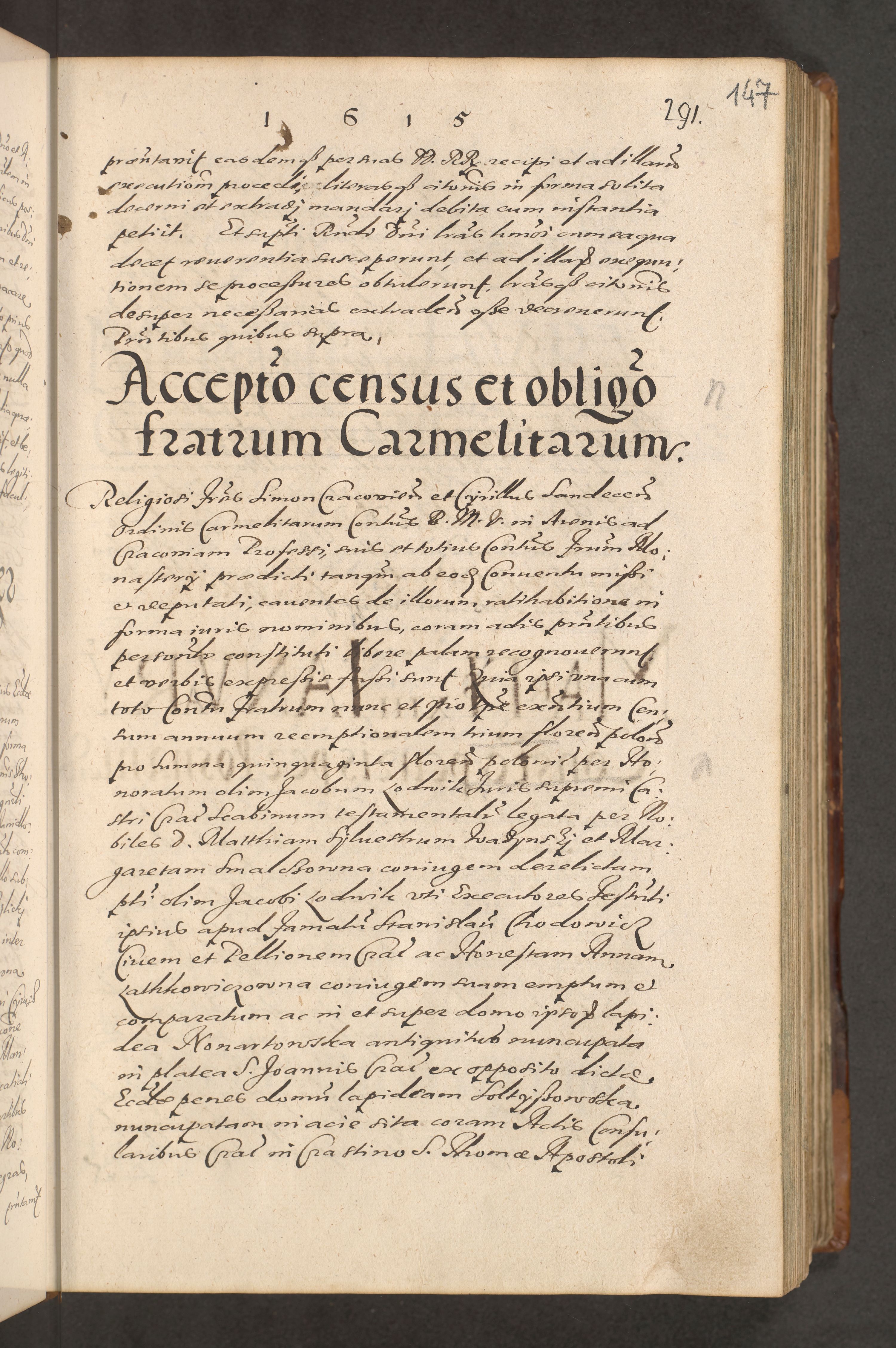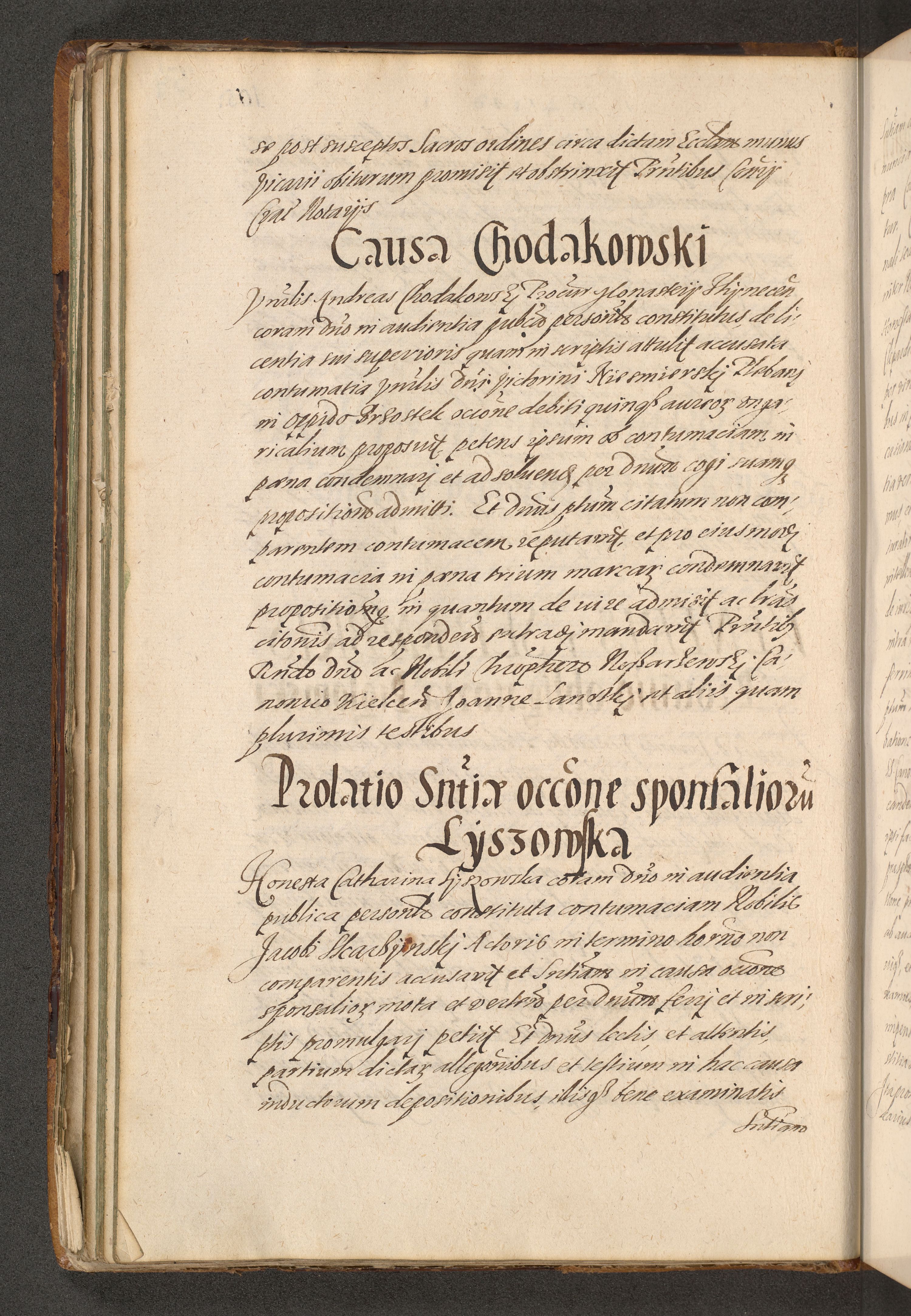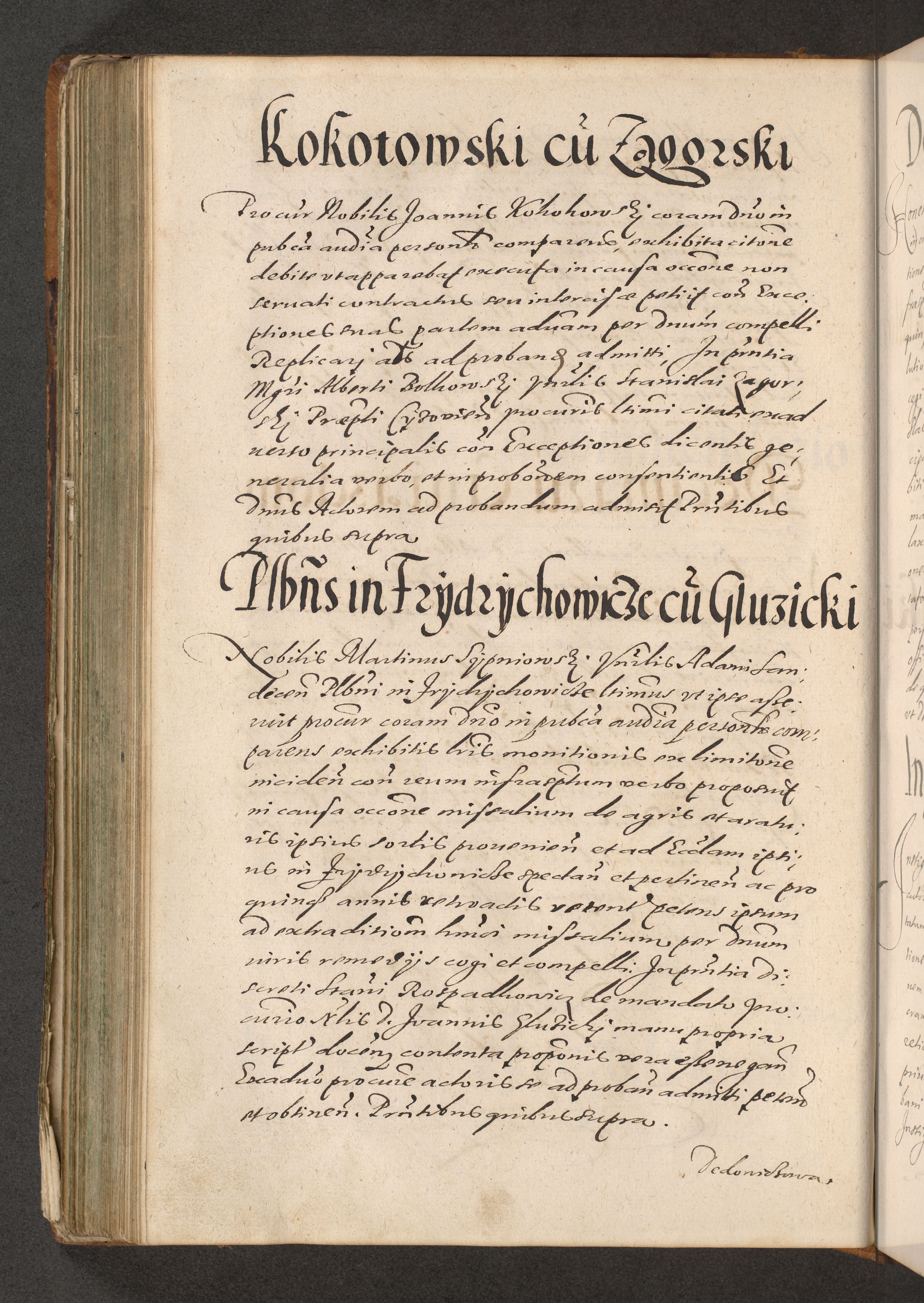 Illustrissimo et Reverendissimo in Christo Patre Domino Domino Petro Tylicki Dei et Apostolice Sedis Gratia Episcopo Cracoviensis Duce Severiensis Acta actorum causarum sententiarum tam interloquutoriarum quam definitivarum decretorum obligationum, quietationum, recognitionum, constitutionum procuratorum etc. etc. coram Admodum Reverendo Domino Thoma Oborski I. V. Doctore Canonico Vicario in Spiritualibus et Officiali generali Cracoviensis in anno Domini Millesimo Sexcentessimo Decimoquarto Cuius Indictio duodecima Pontificus SS. D. N. D. Pauli Divina providentia Papae quinti Anno decimo foeliciter incipiunt