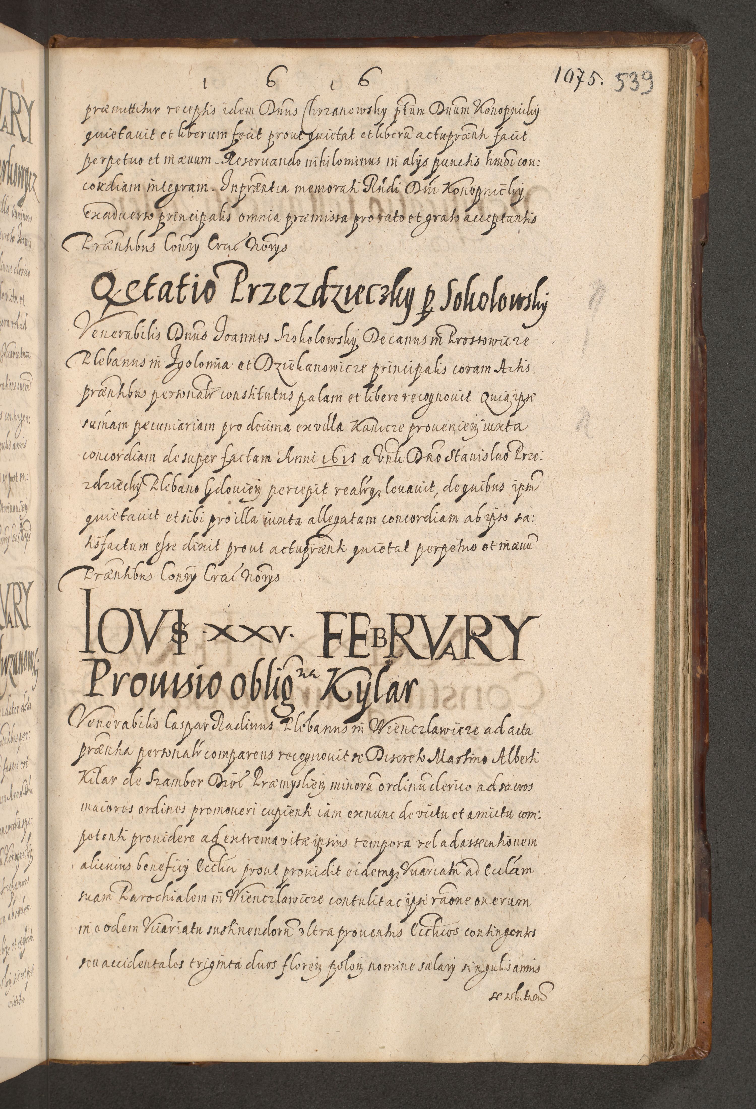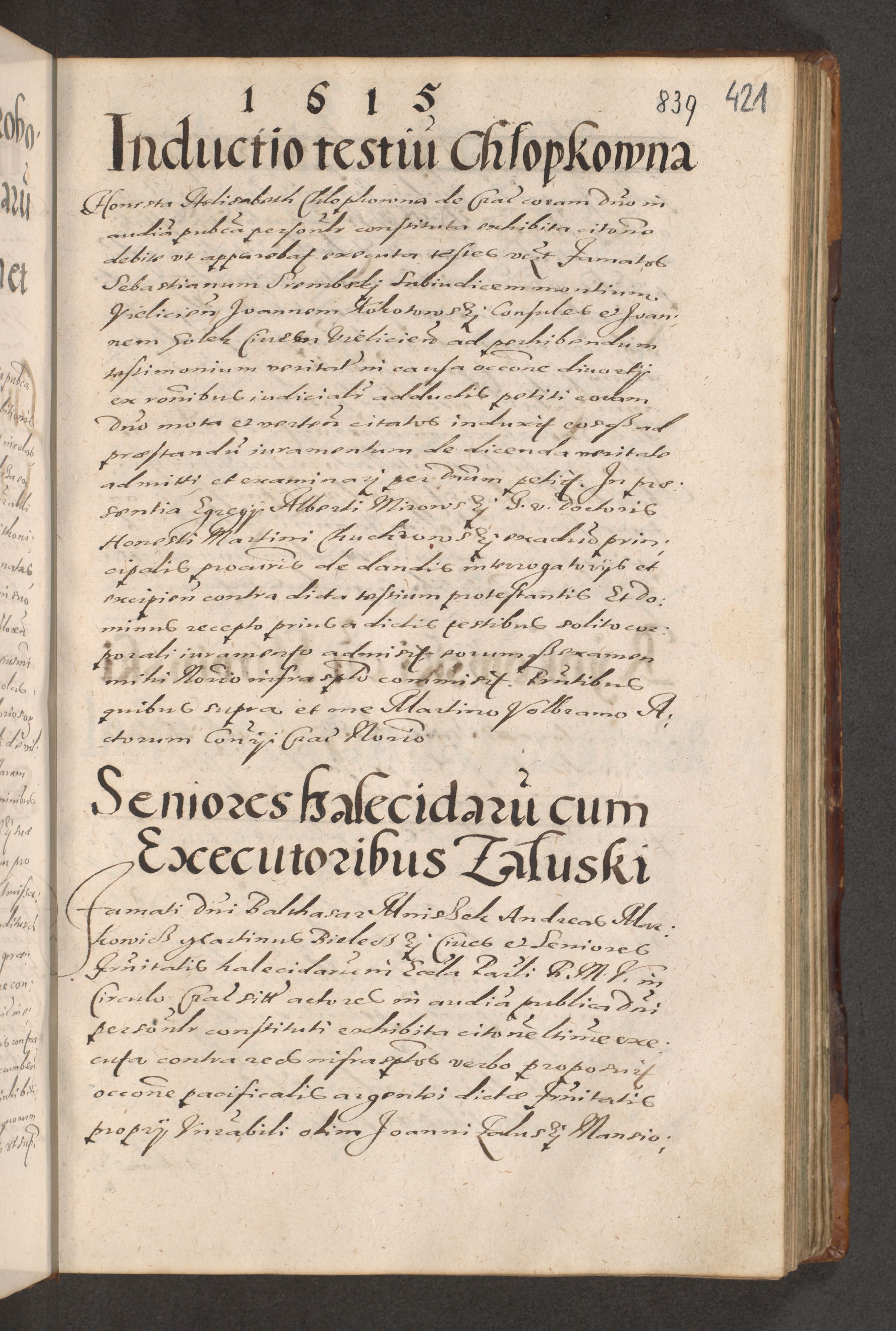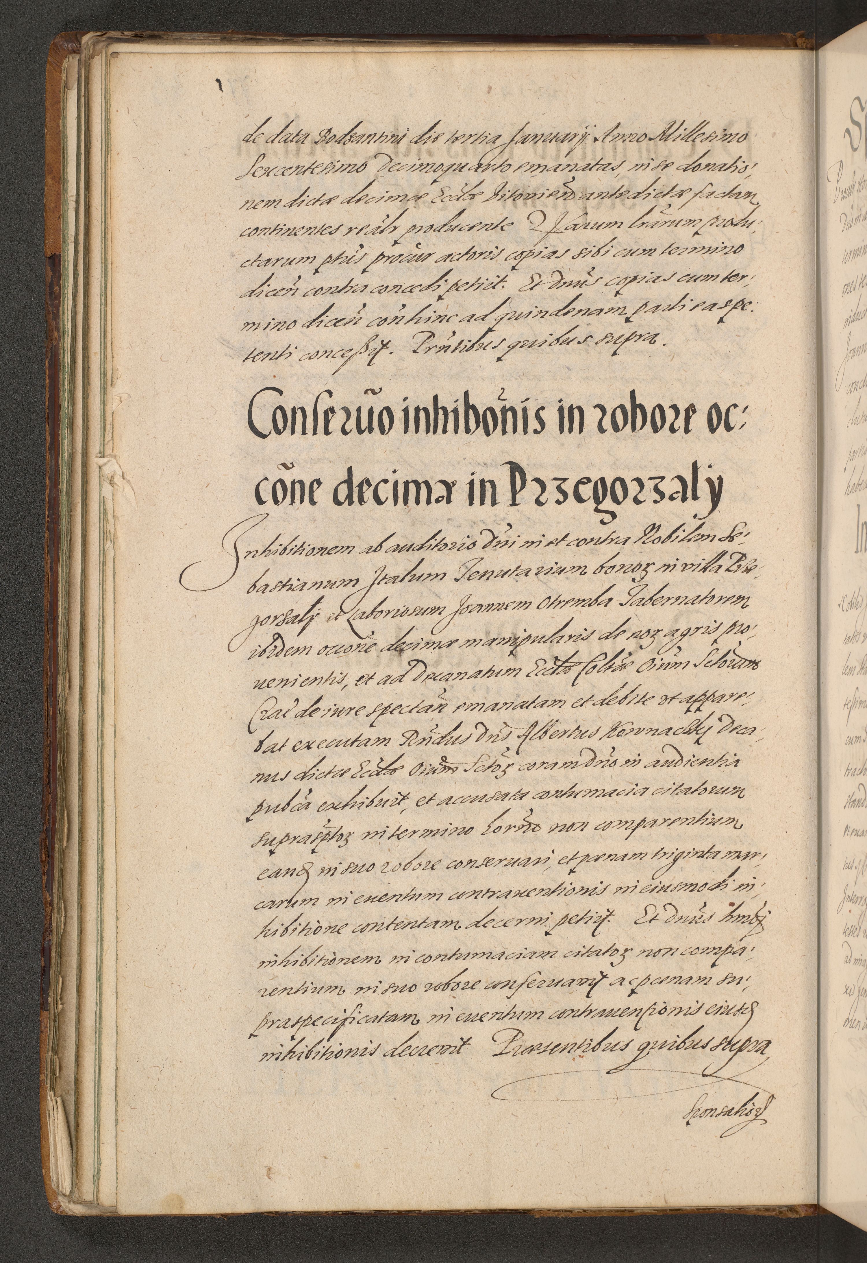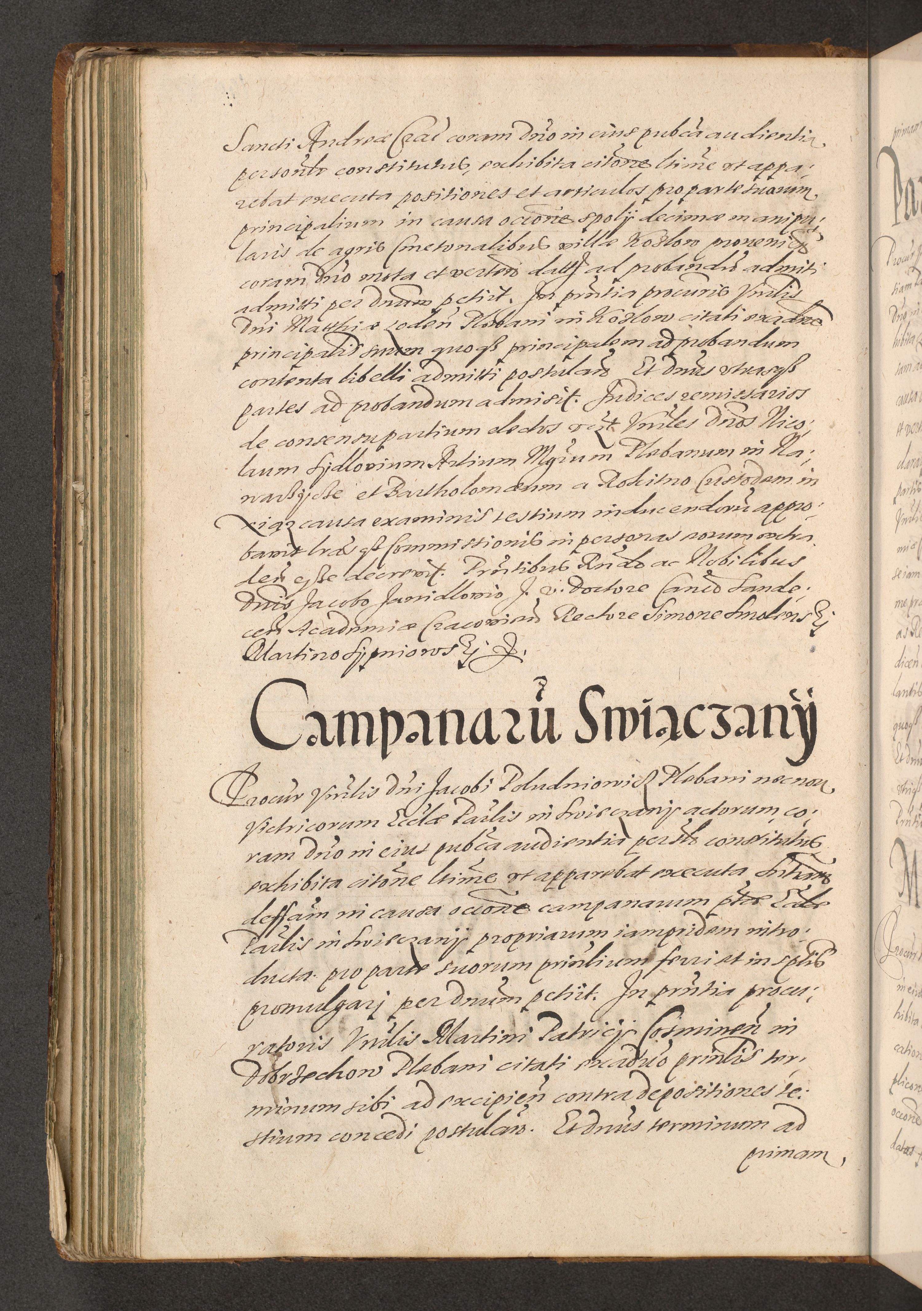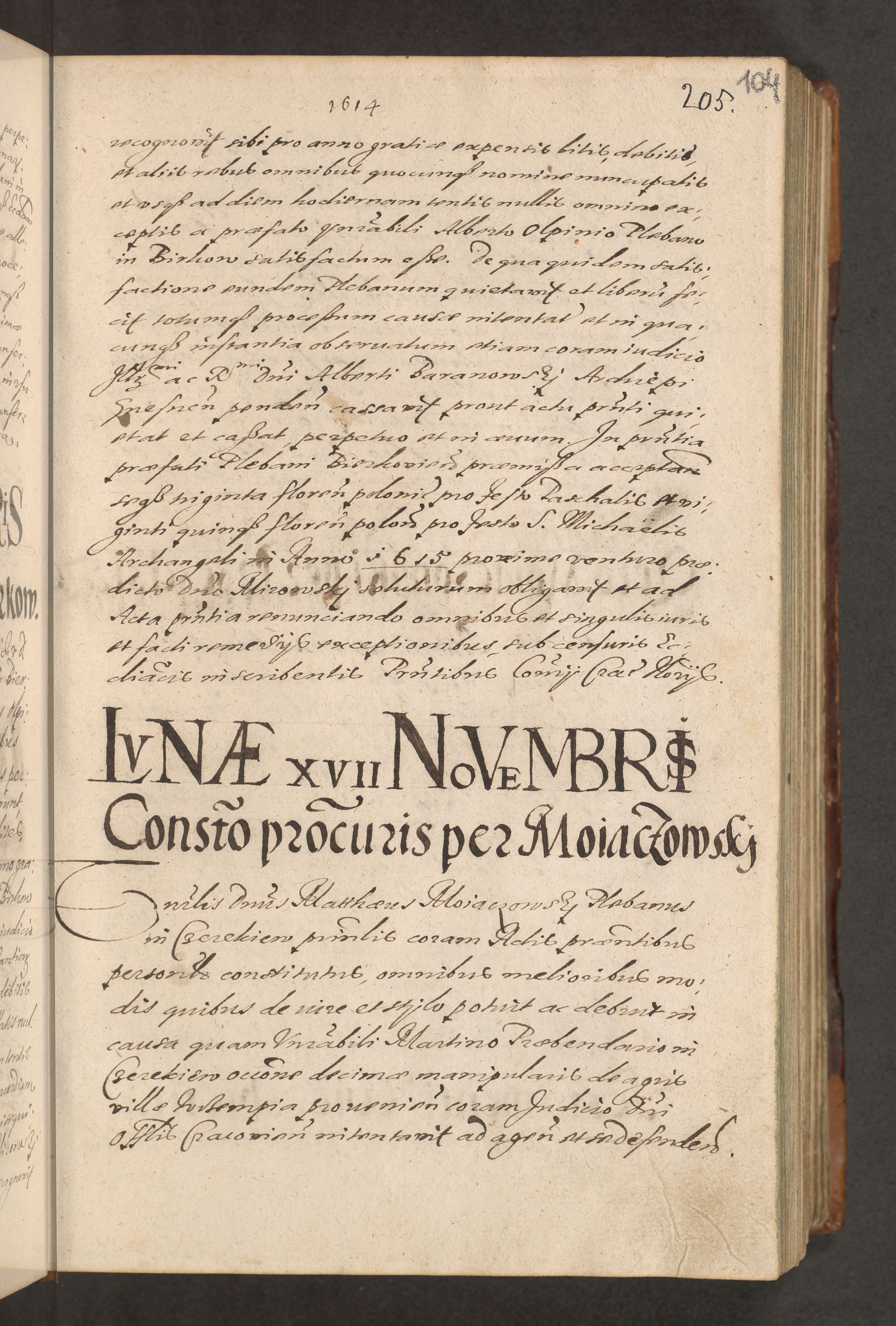 Illustrissimo et Reverendissimo in Christo Patre Domino Domino Petro Tylicki Dei et Apostolice Sedis Gratia Episcopo Cracoviensis Duce Severiensis Acta actorum causarum sententiarum tam interloquutoriarum quam definitivarum decretorum obligationum, quietationum, recognitionum, constitutionum procuratorum etc. etc. coram Admodum Reverendo Domino Thoma Oborski I. V. Doctore Canonico Vicario in Spiritualibus et Officiali generali Cracoviensis in anno Domini Millesimo Sexcentessimo Decimoquarto Cuius Indictio duodecima Pontificus SS. D. N. D. Pauli Divina providentia Papae quinti Anno decimo foeliciter incipiunt