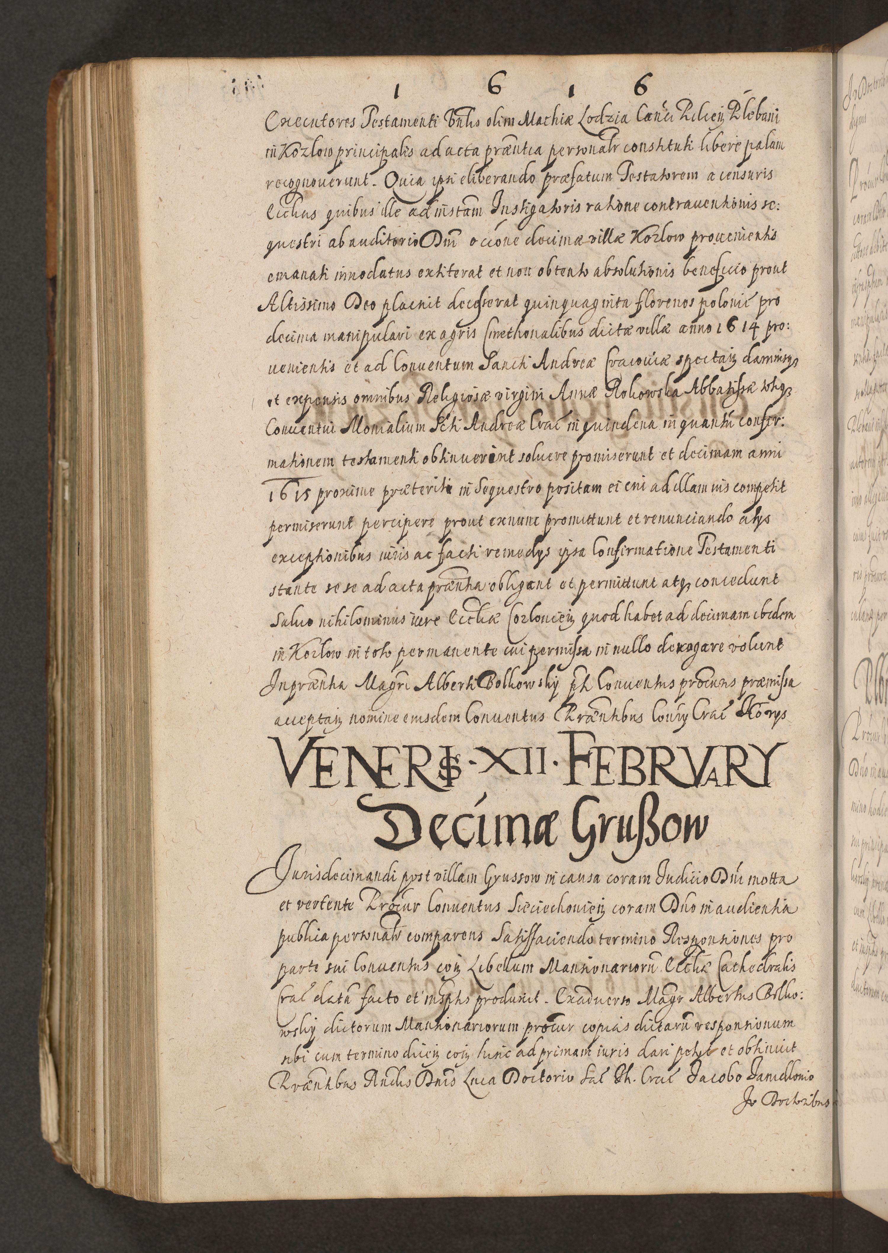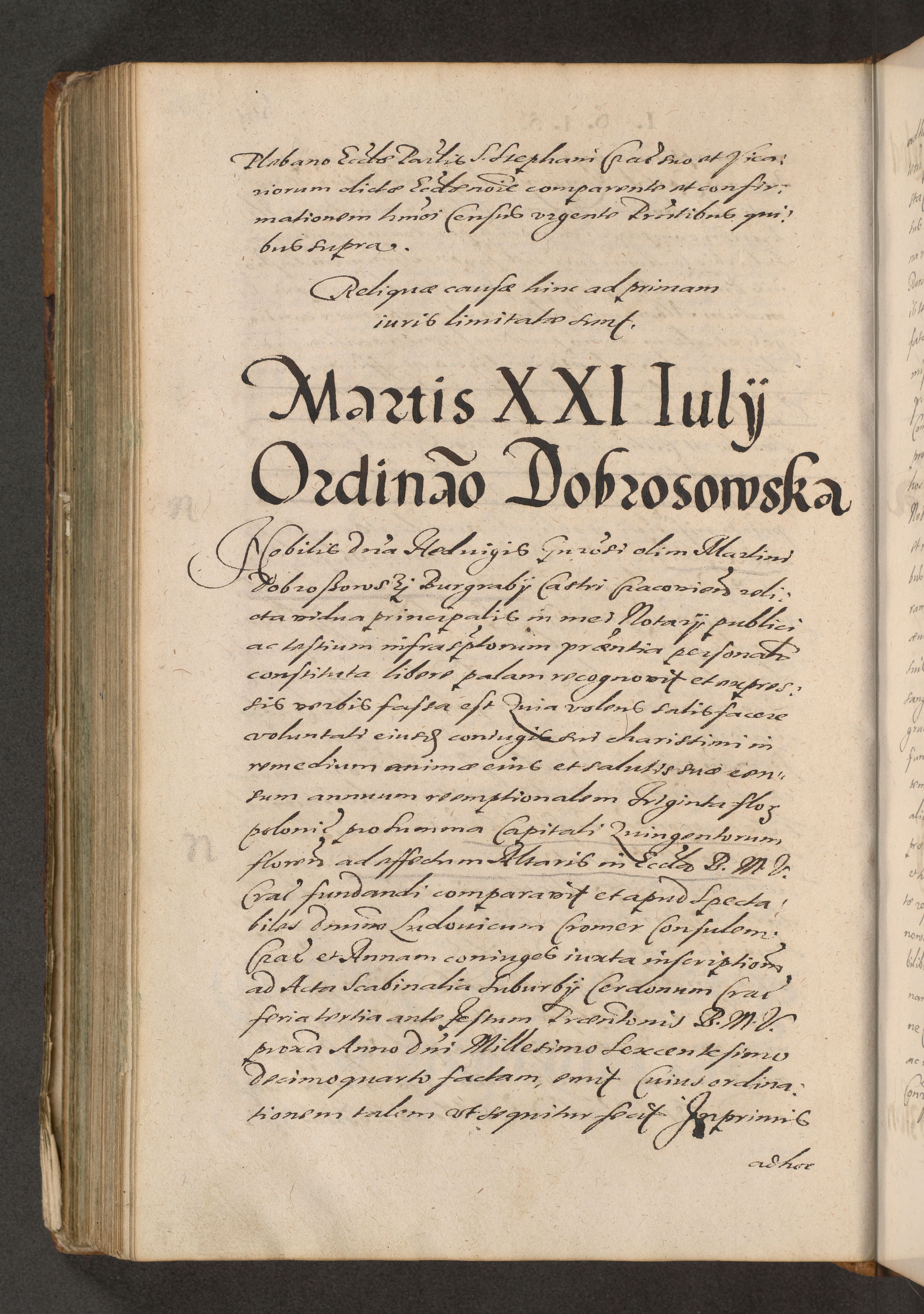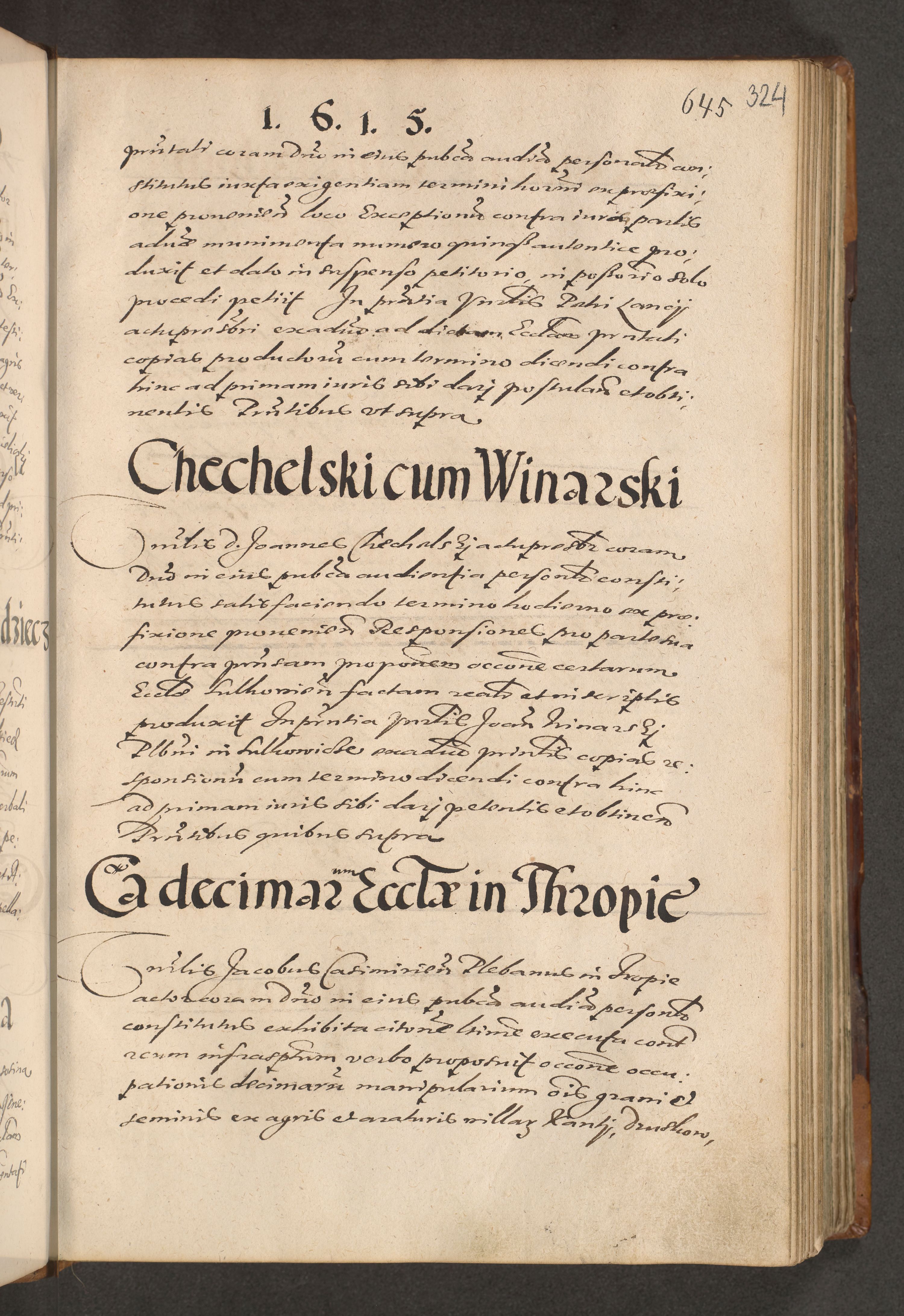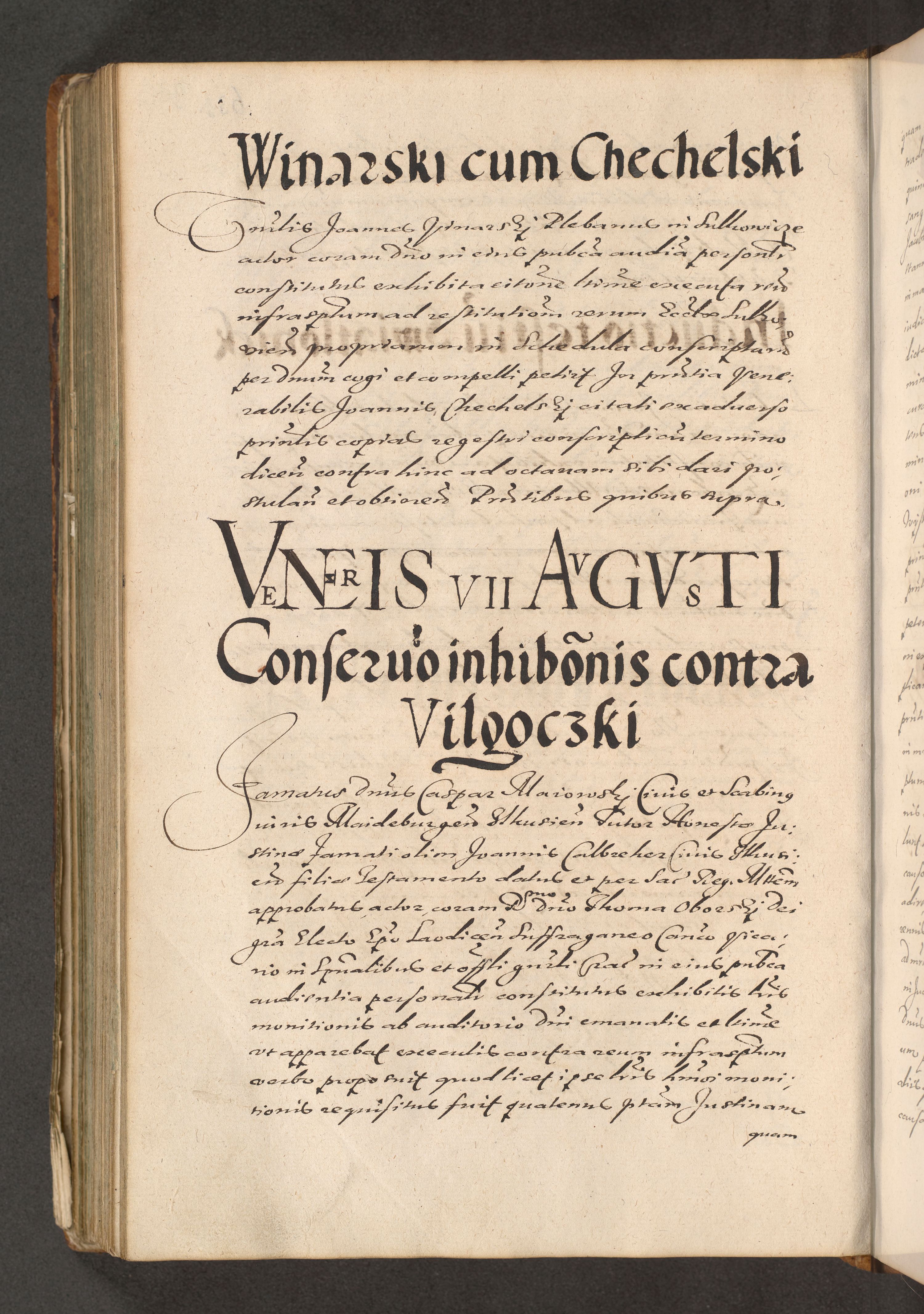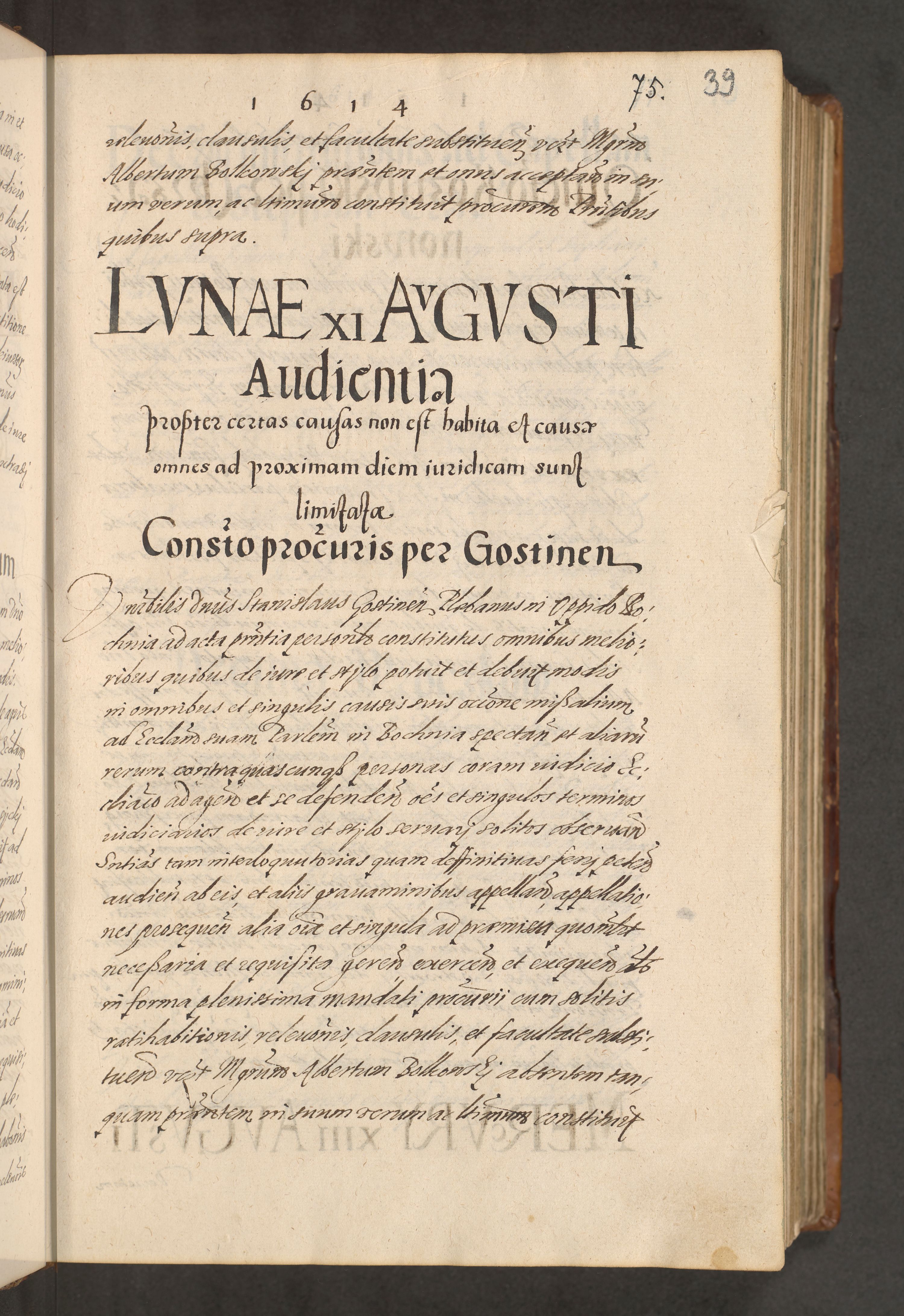 Illustrissimo et Reverendissimo in Christo Patre Domino Domino Petro Tylicki Dei et Apostolice Sedis Gratia Episcopo Cracoviensis Duce Severiensis Acta actorum causarum sententiarum tam interloquutoriarum quam definitivarum decretorum obligationum, quietationum, recognitionum, constitutionum procuratorum etc. etc. coram Admodum Reverendo Domino Thoma Oborski I. V. Doctore Canonico Vicario in Spiritualibus et Officiali generali Cracoviensis in anno Domini Millesimo Sexcentessimo Decimoquarto Cuius Indictio duodecima Pontificus SS. D. N. D. Pauli Divina providentia Papae quinti Anno decimo foeliciter incipiunt