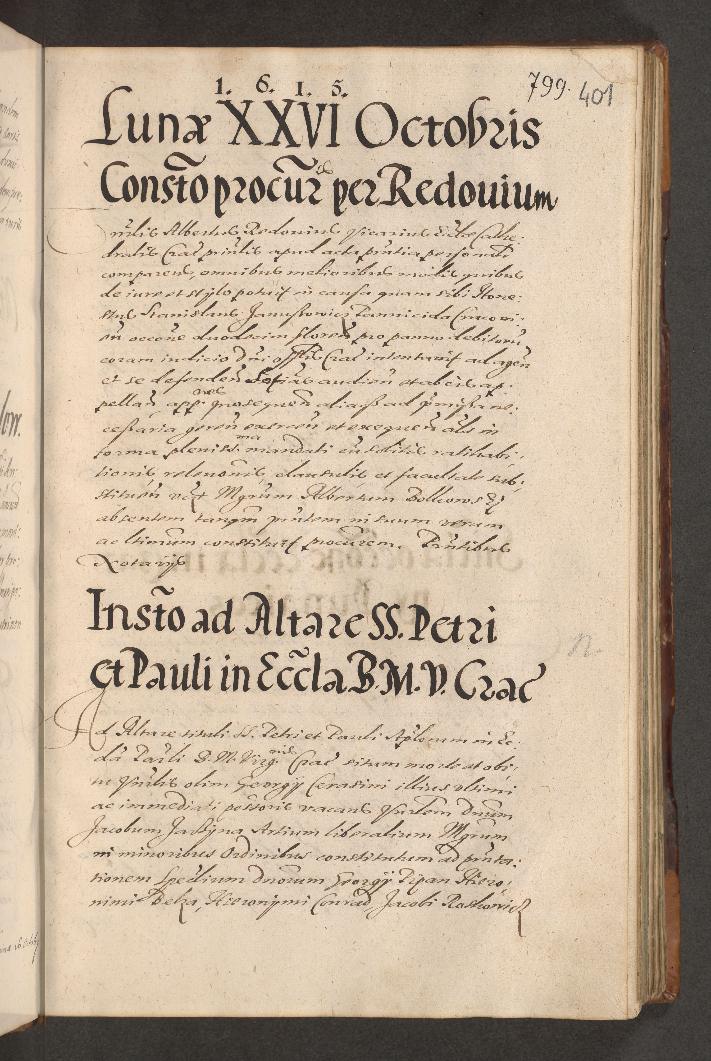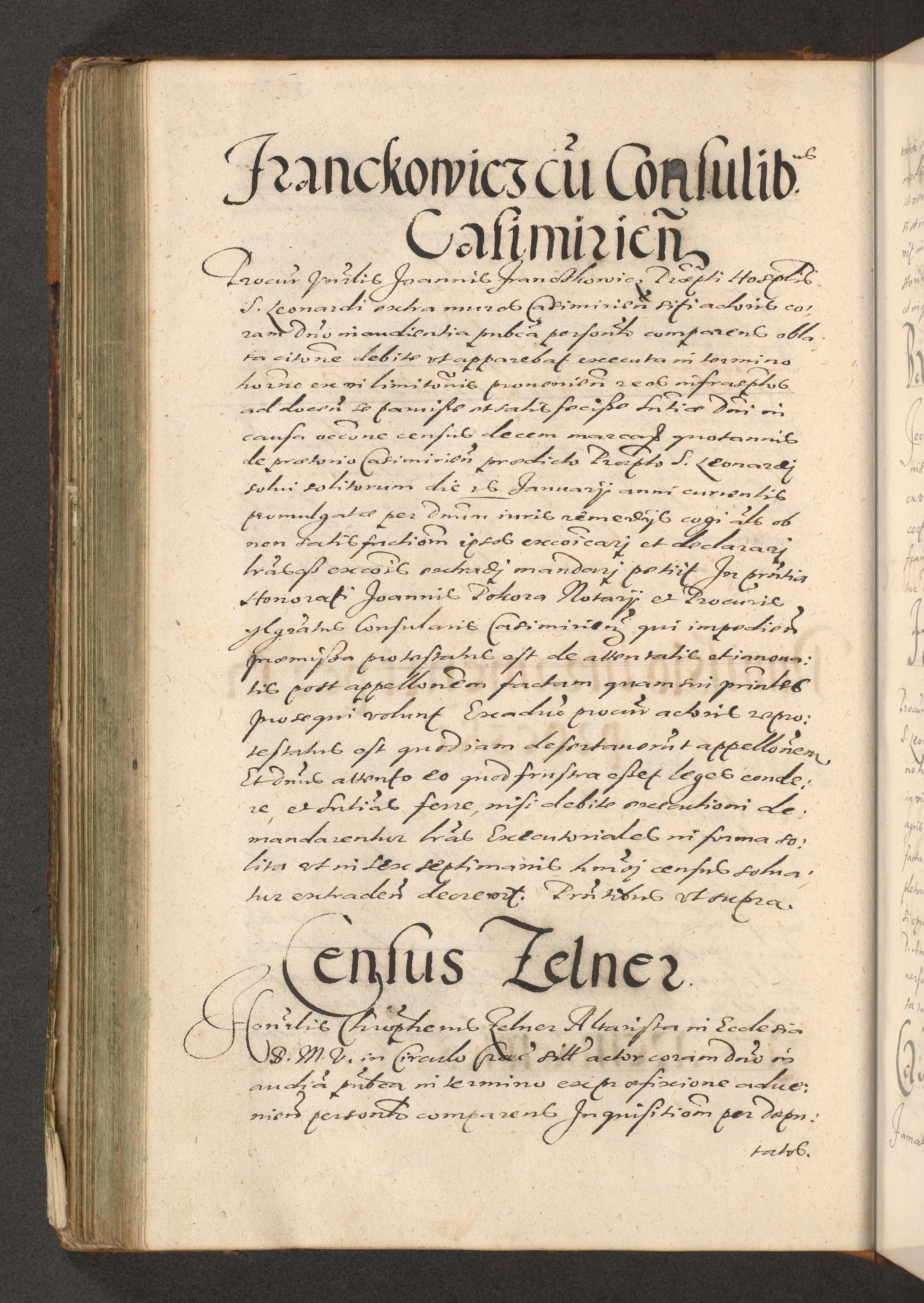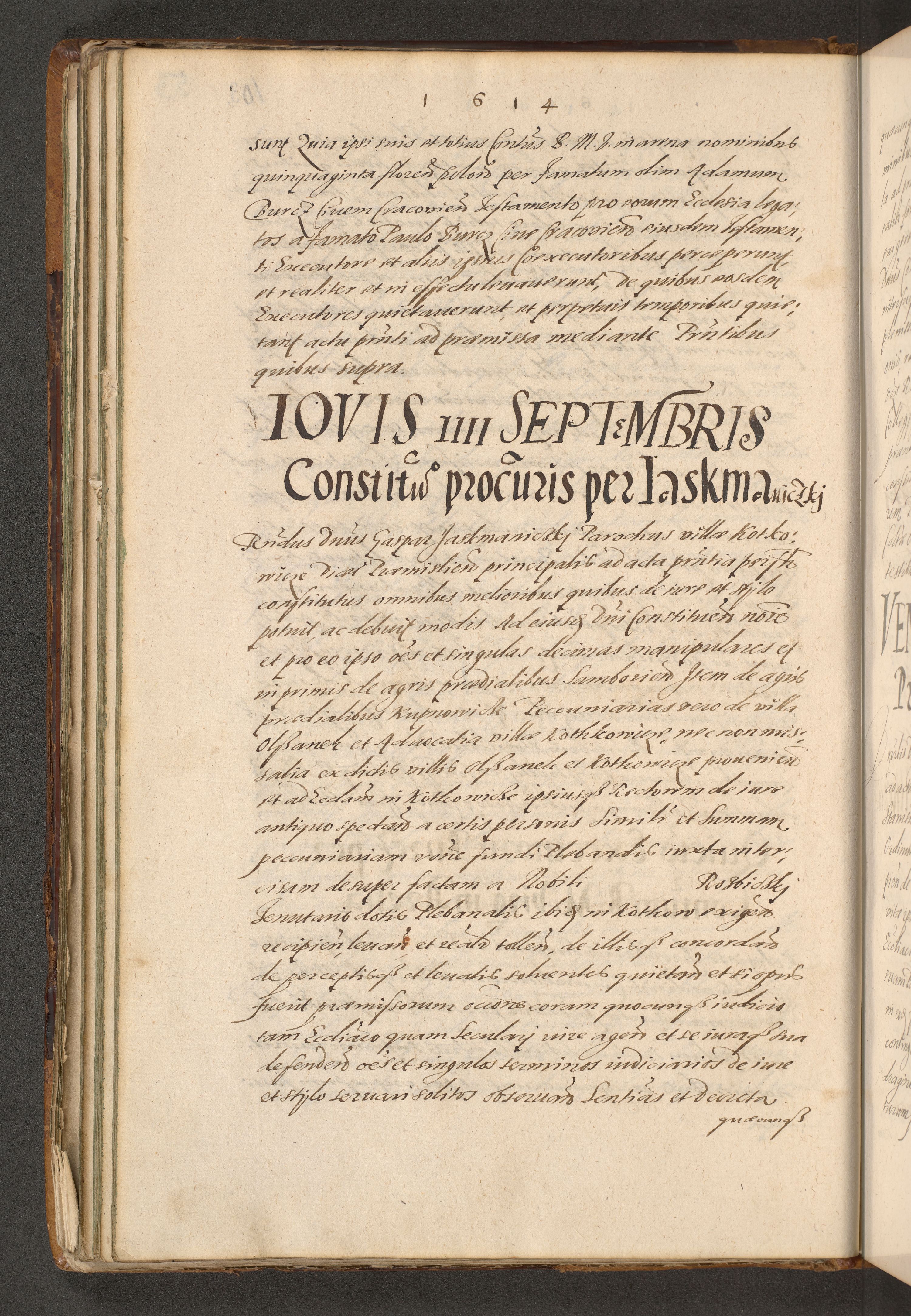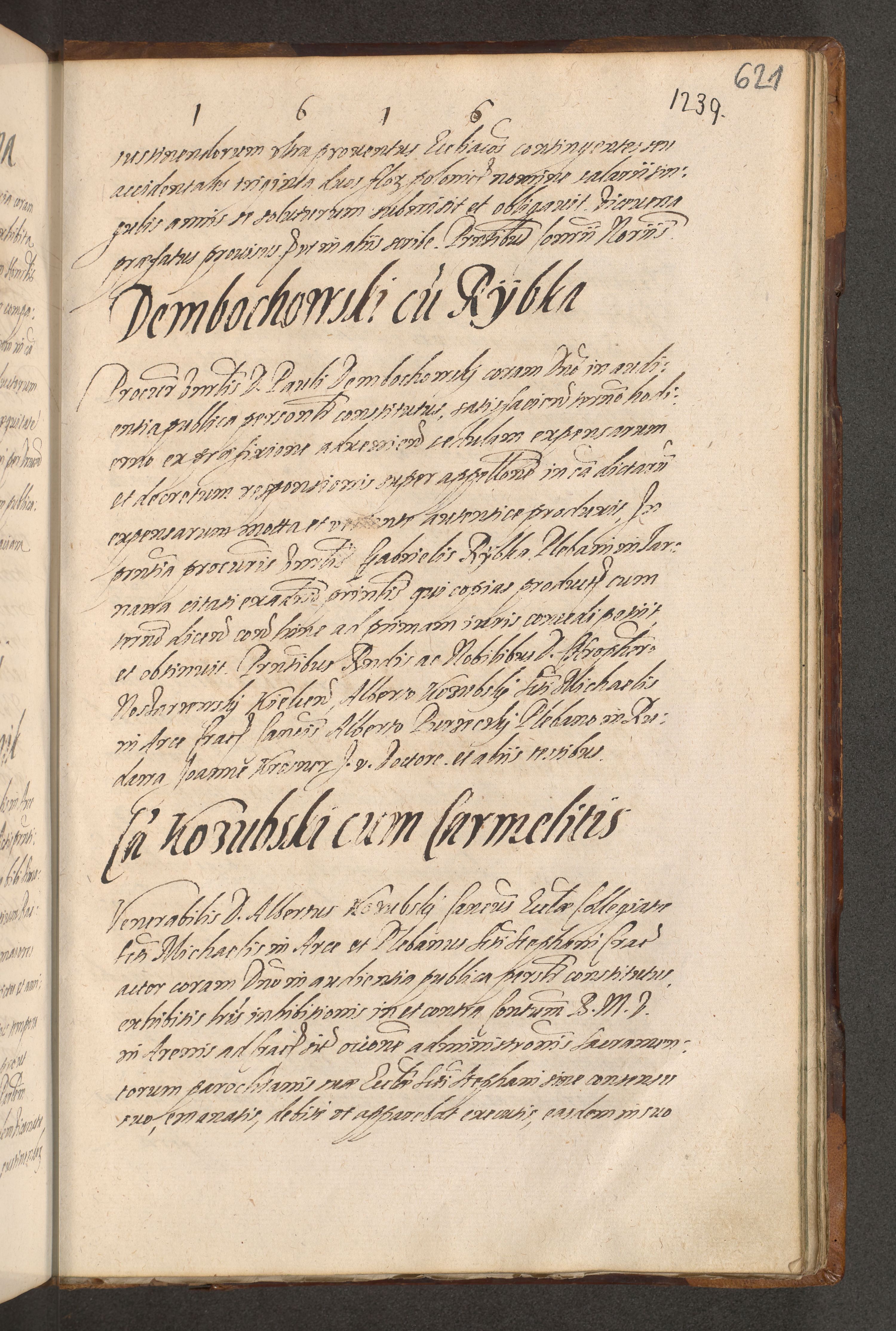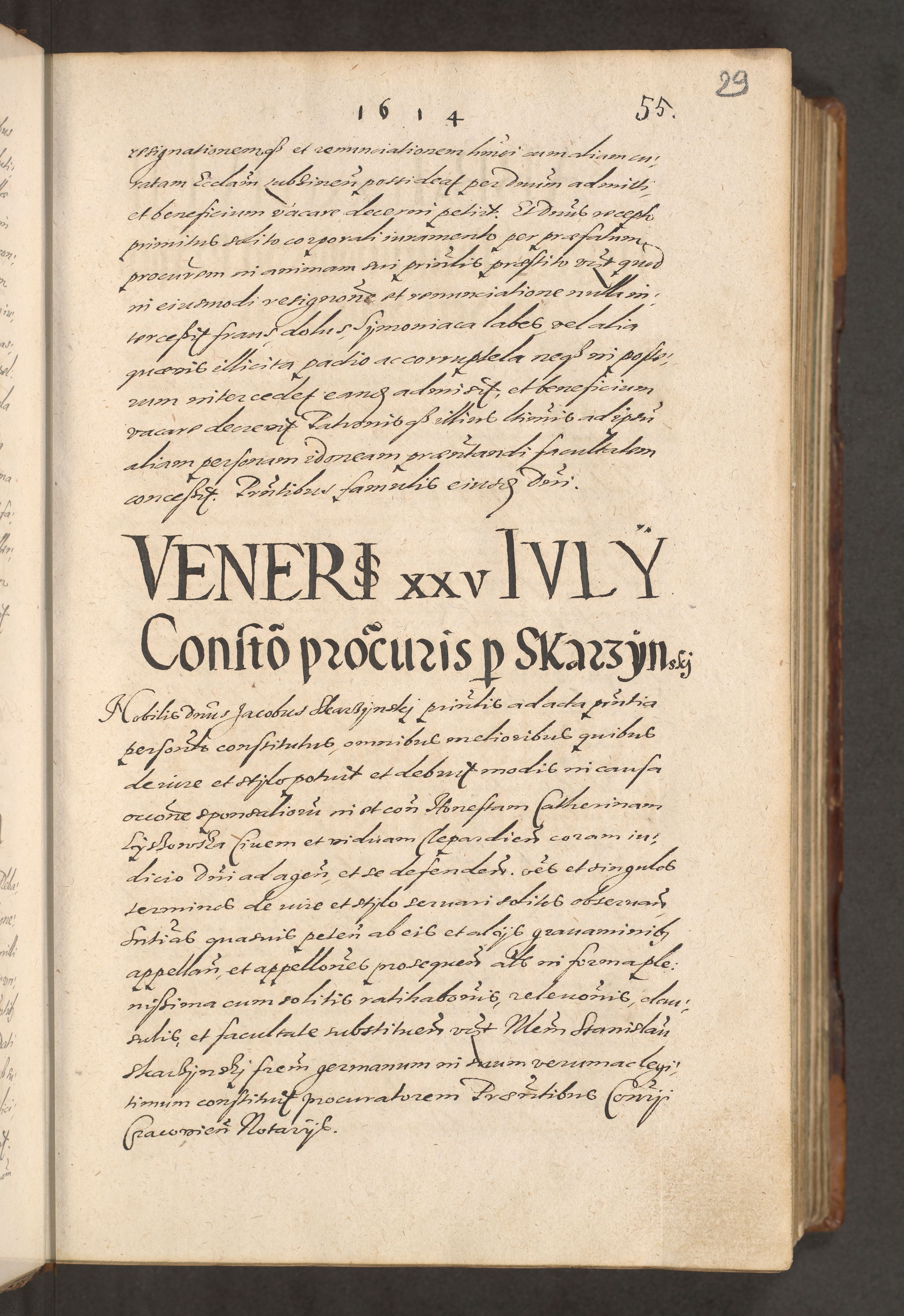 Illustrissimo et Reverendissimo in Christo Patre Domino Domino Petro Tylicki Dei et Apostolice Sedis Gratia Episcopo Cracoviensis Duce Severiensis Acta actorum causarum sententiarum tam interloquutoriarum quam definitivarum decretorum obligationum, quietationum, recognitionum, constitutionum procuratorum etc. etc. coram Admodum Reverendo Domino Thoma Oborski I. V. Doctore Canonico Vicario in Spiritualibus et Officiali generali Cracoviensis in anno Domini Millesimo Sexcentessimo Decimoquarto Cuius Indictio duodecima Pontificus SS. D. N. D. Pauli Divina providentia Papae quinti Anno decimo foeliciter incipiunt