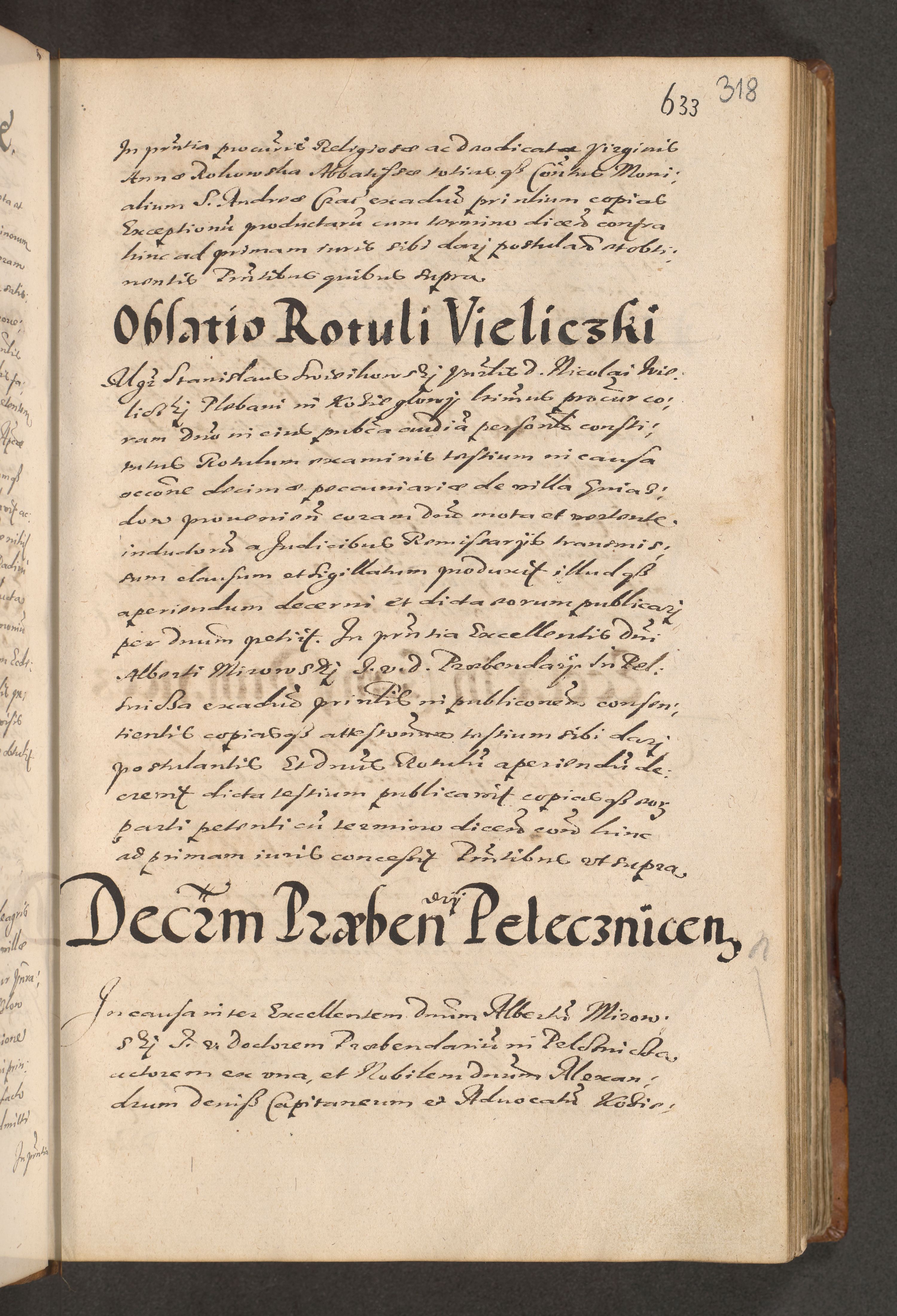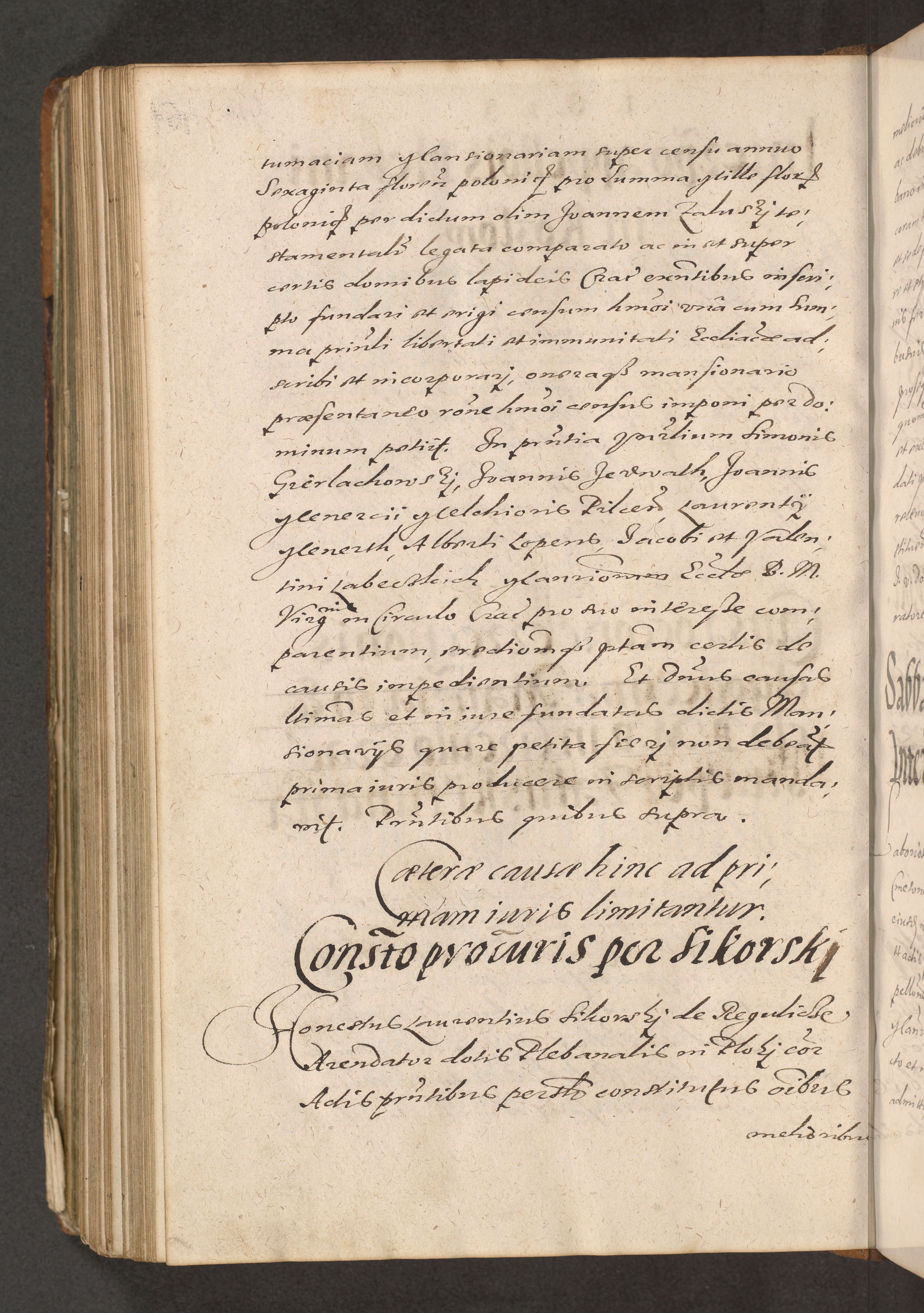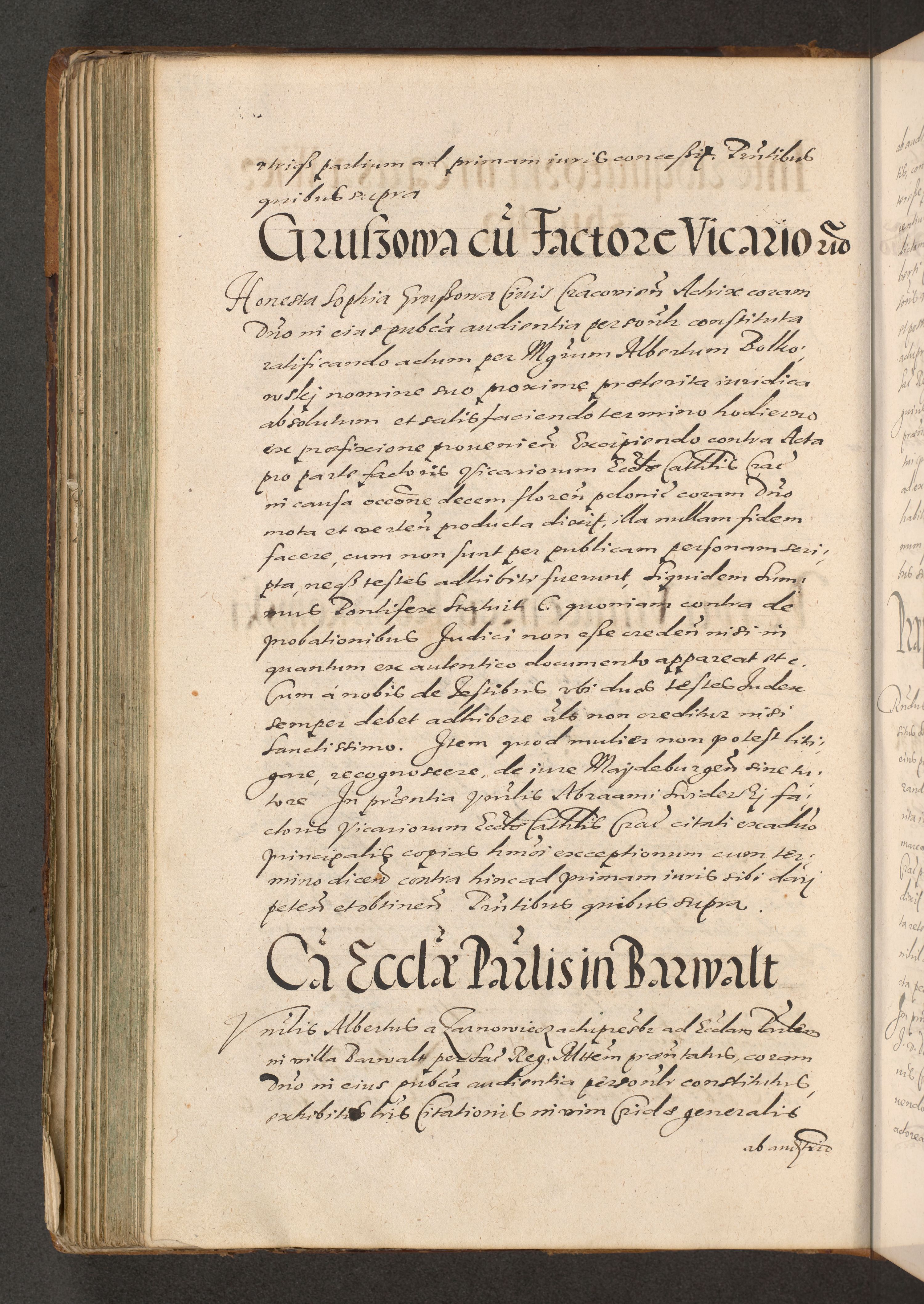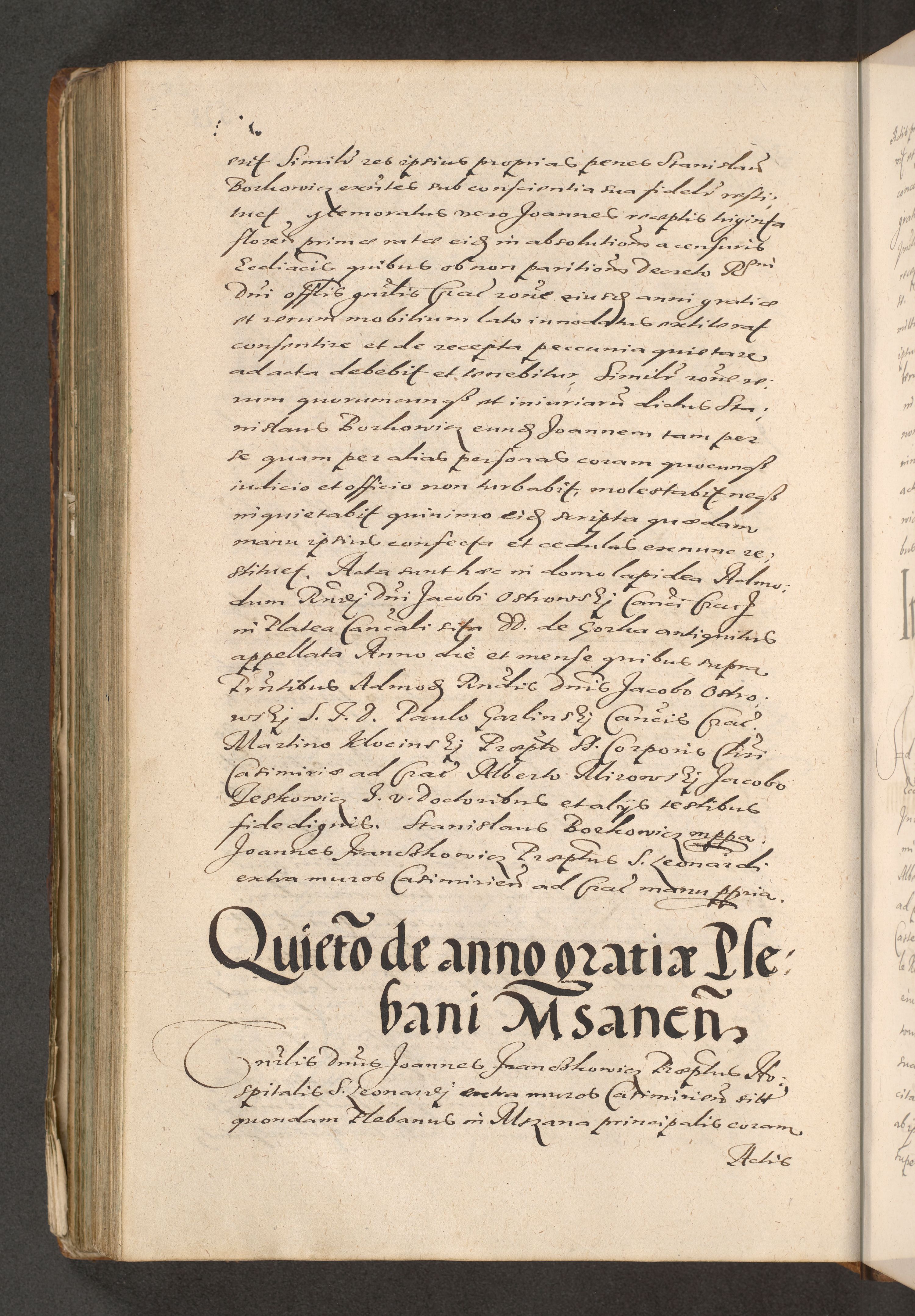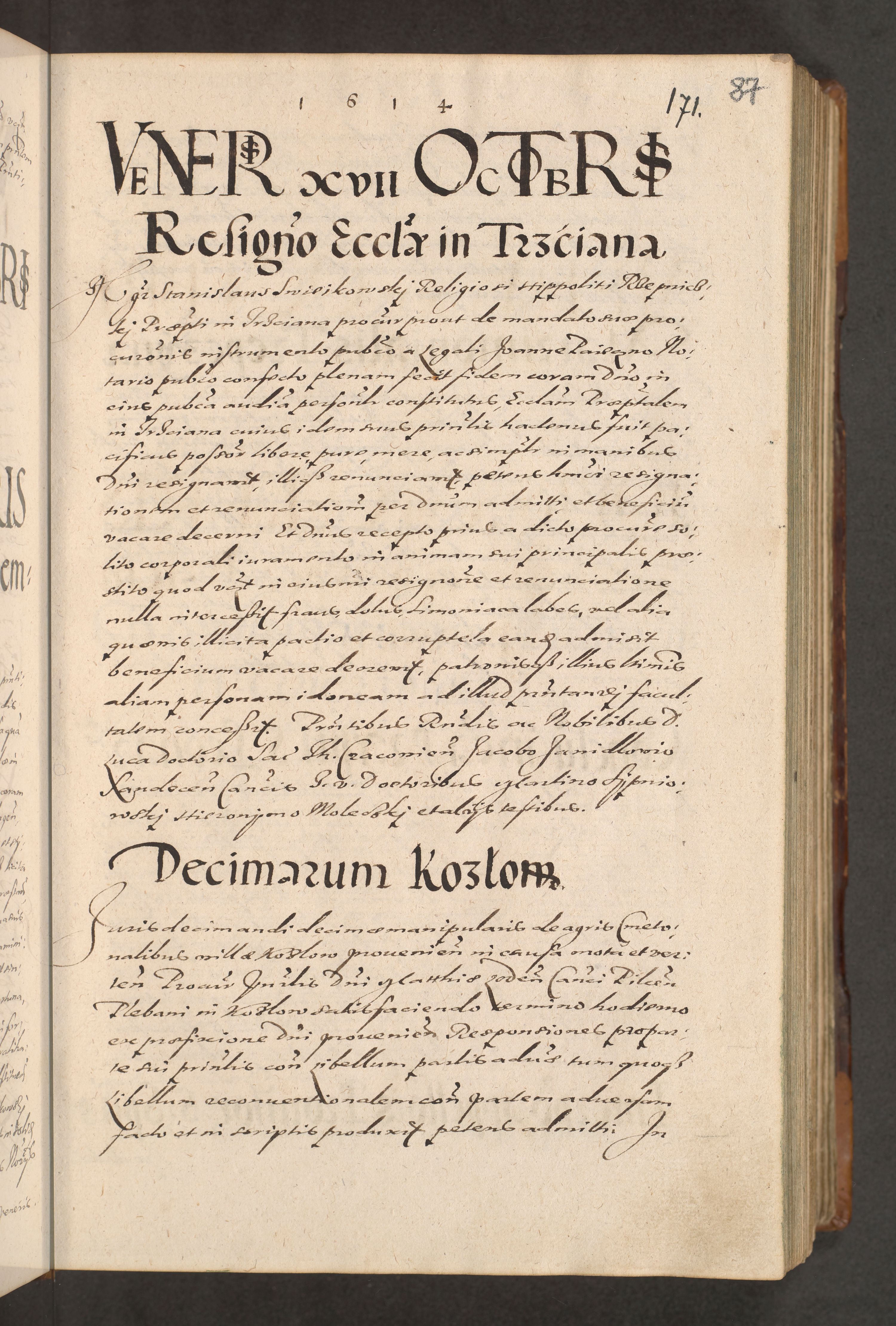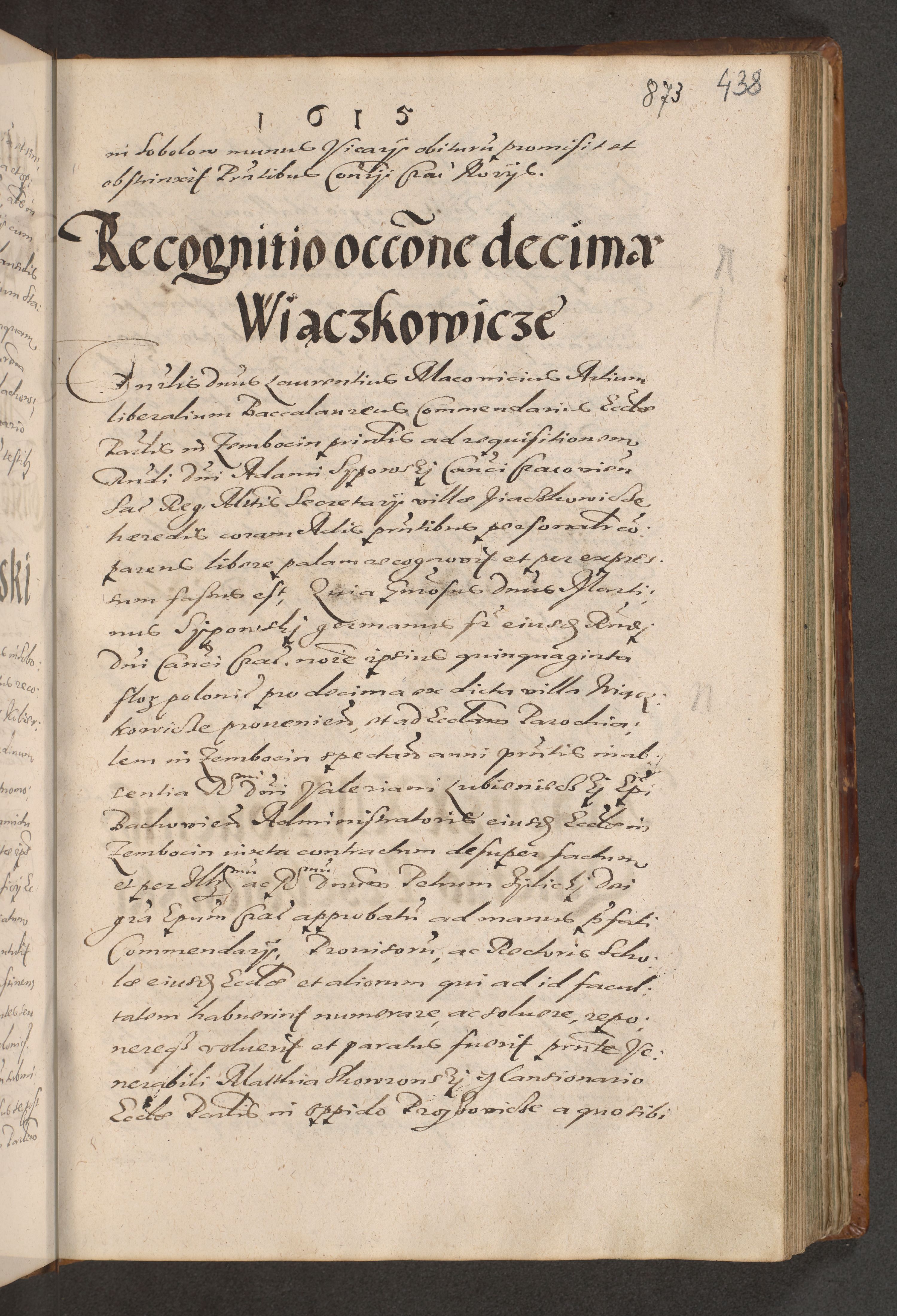 Illustrissimo et Reverendissimo in Christo Patre Domino Domino Petro Tylicki Dei et Apostolice Sedis Gratia Episcopo Cracoviensis Duce Severiensis Acta actorum causarum sententiarum tam interloquutoriarum quam definitivarum decretorum obligationum, quietationum, recognitionum, constitutionum procuratorum etc. etc. coram Admodum Reverendo Domino Thoma Oborski I. V. Doctore Canonico Vicario in Spiritualibus et Officiali generali Cracoviensis in anno Domini Millesimo Sexcentessimo Decimoquarto Cuius Indictio duodecima Pontificus SS. D. N. D. Pauli Divina providentia Papae quinti Anno decimo foeliciter incipiunt