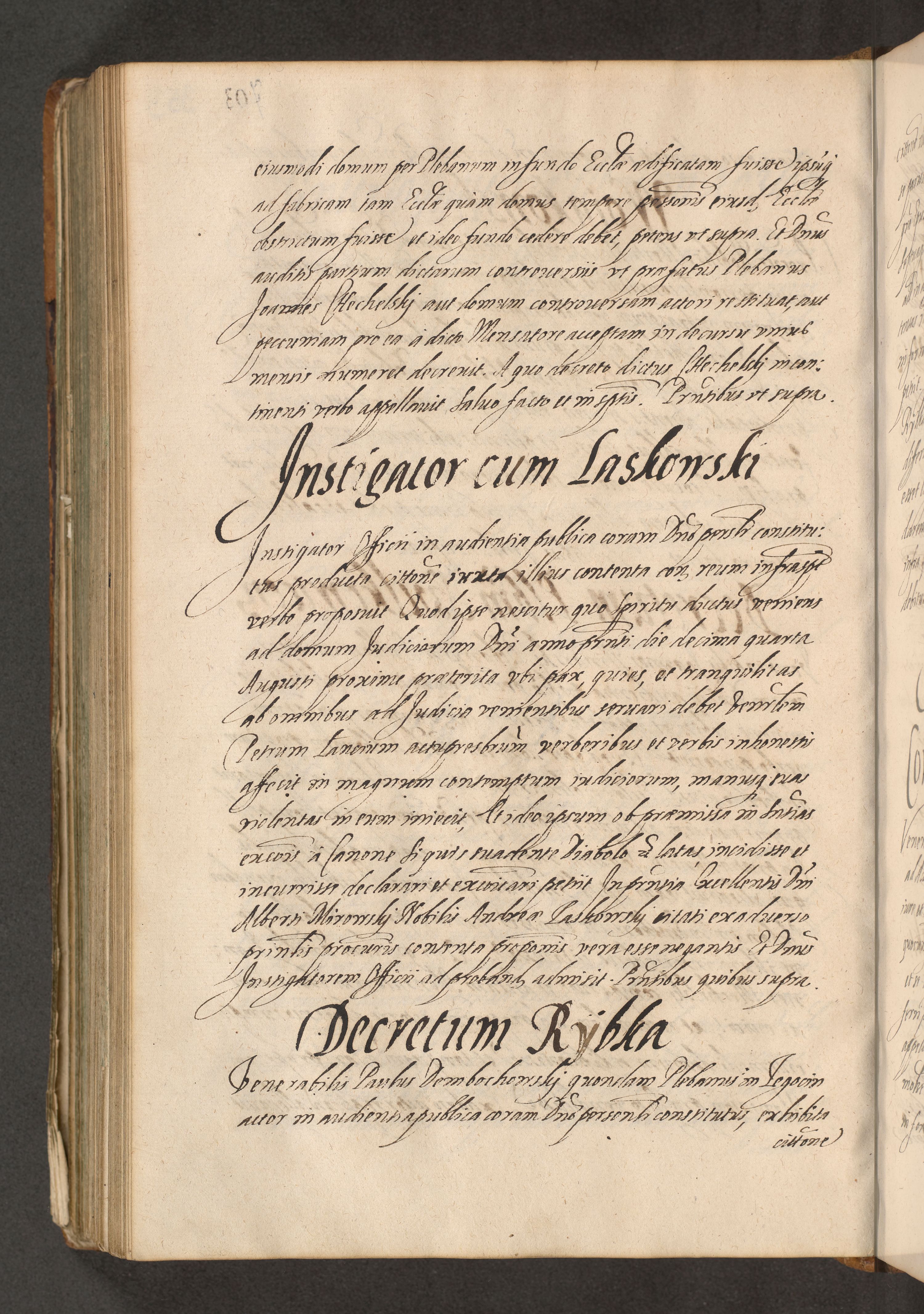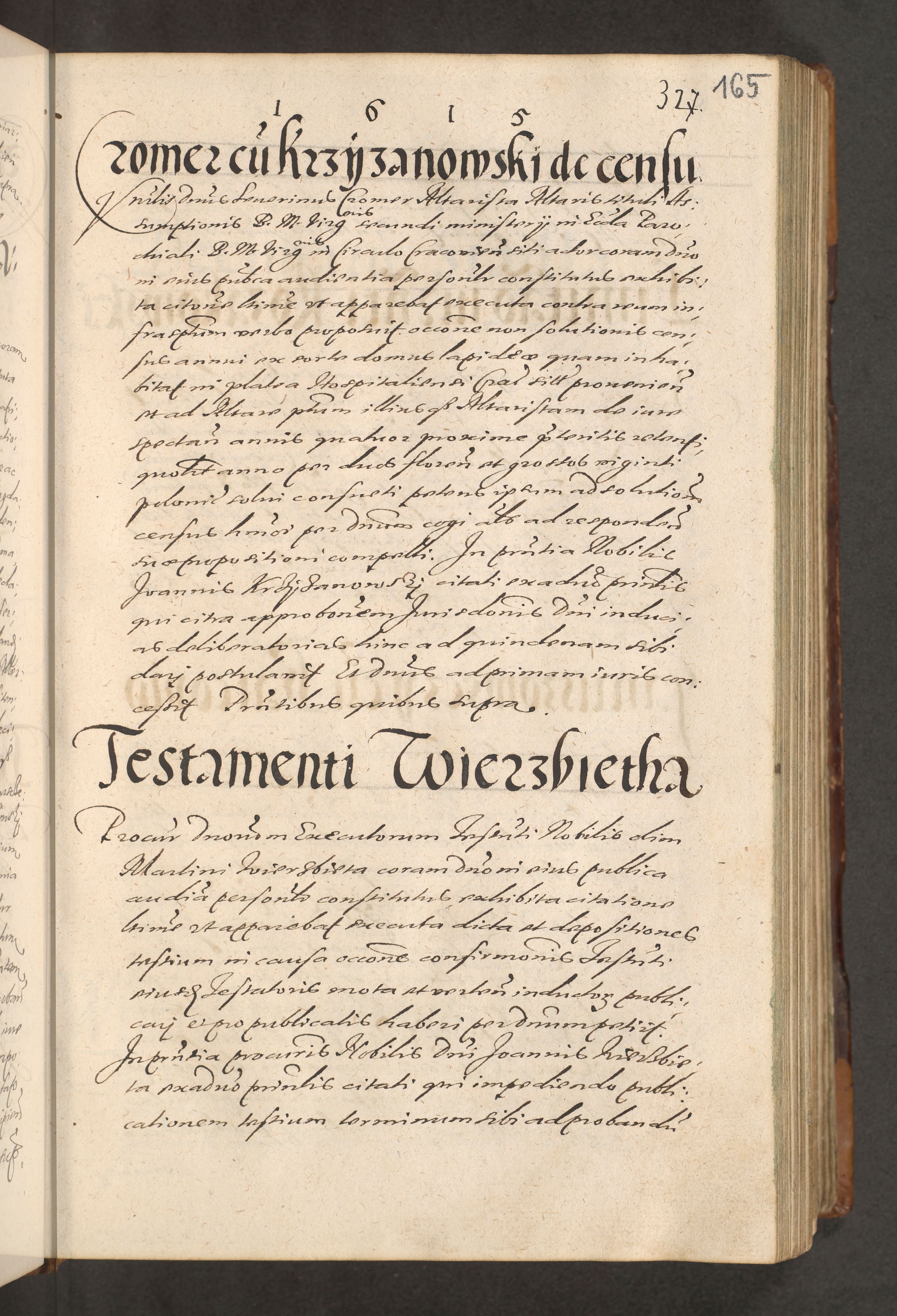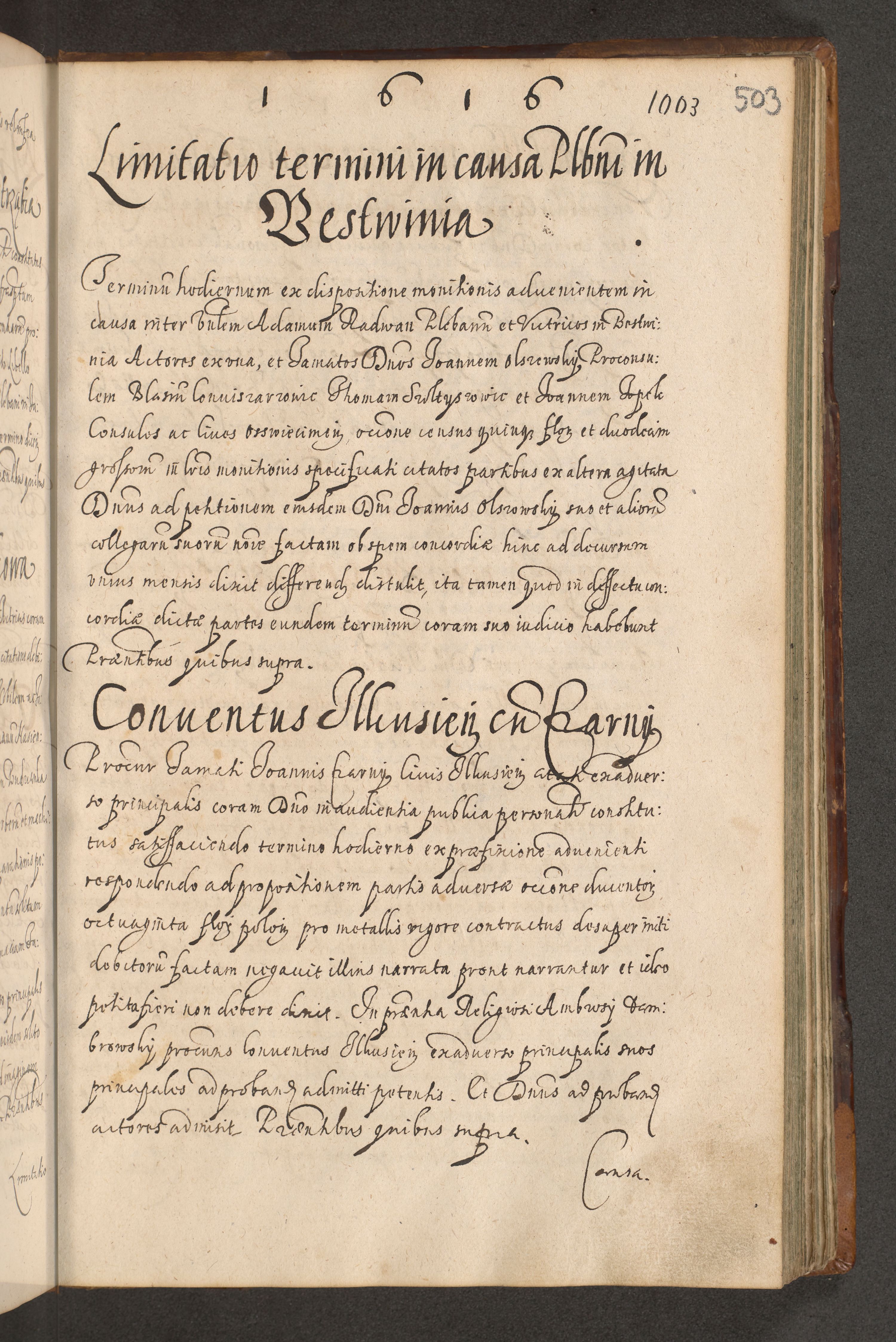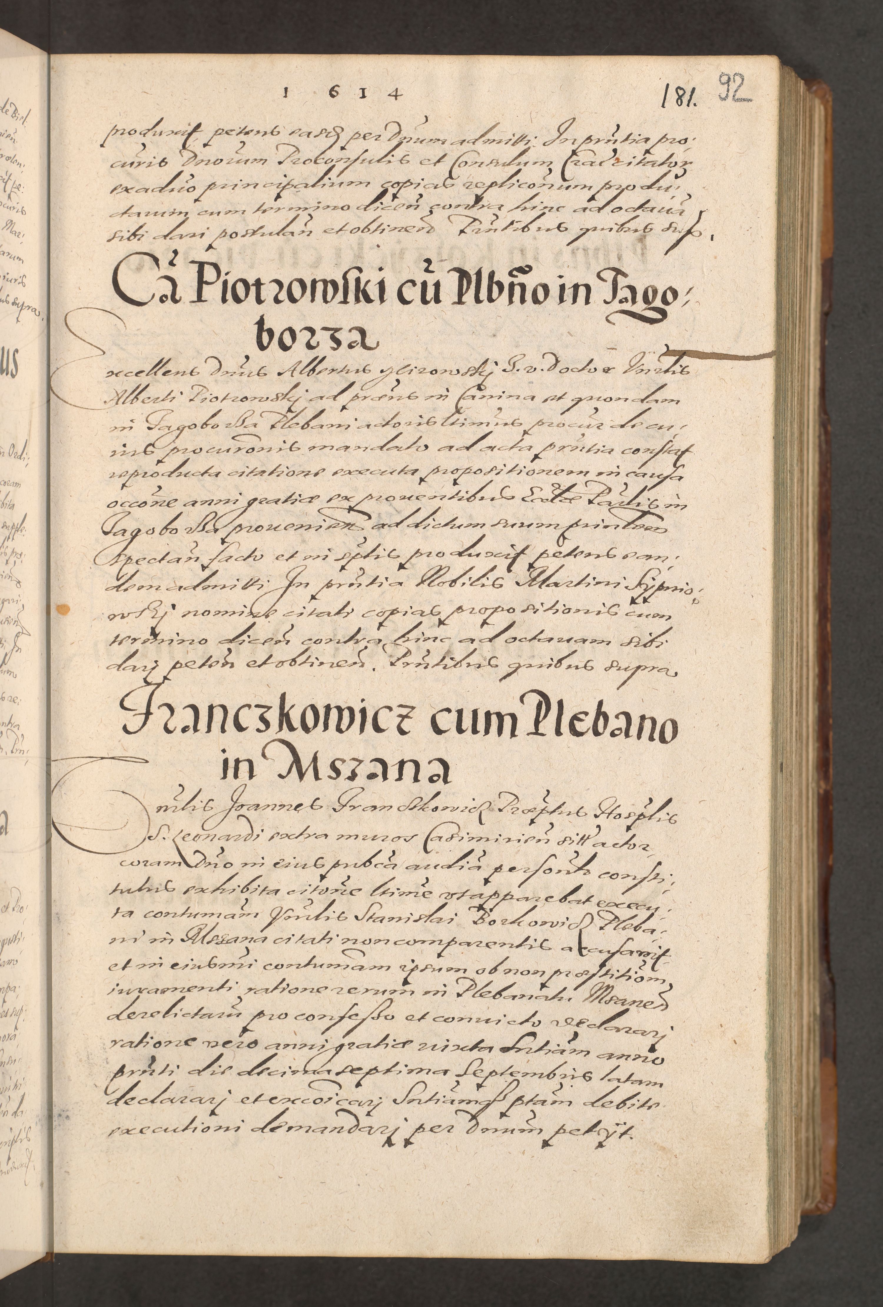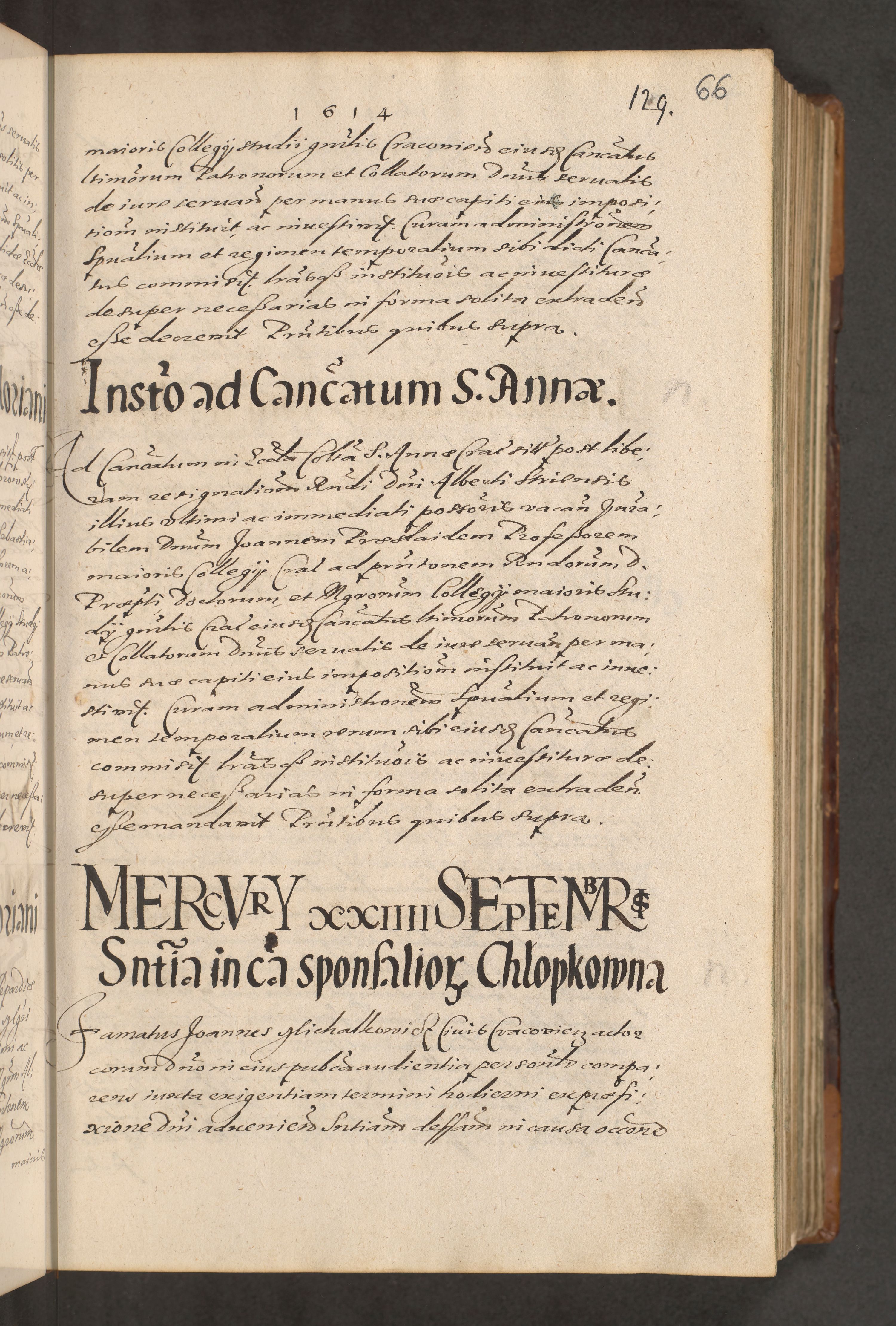 Illustrissimo et Reverendissimo in Christo Patre Domino Domino Petro Tylicki Dei et Apostolice Sedis Gratia Episcopo Cracoviensis Duce Severiensis Acta actorum causarum sententiarum tam interloquutoriarum quam definitivarum decretorum obligationum, quietationum, recognitionum, constitutionum procuratorum etc. etc. coram Admodum Reverendo Domino Thoma Oborski I. V. Doctore Canonico Vicario in Spiritualibus et Officiali generali Cracoviensis in anno Domini Millesimo Sexcentessimo Decimoquarto Cuius Indictio duodecima Pontificus SS. D. N. D. Pauli Divina providentia Papae quinti Anno decimo foeliciter incipiunt