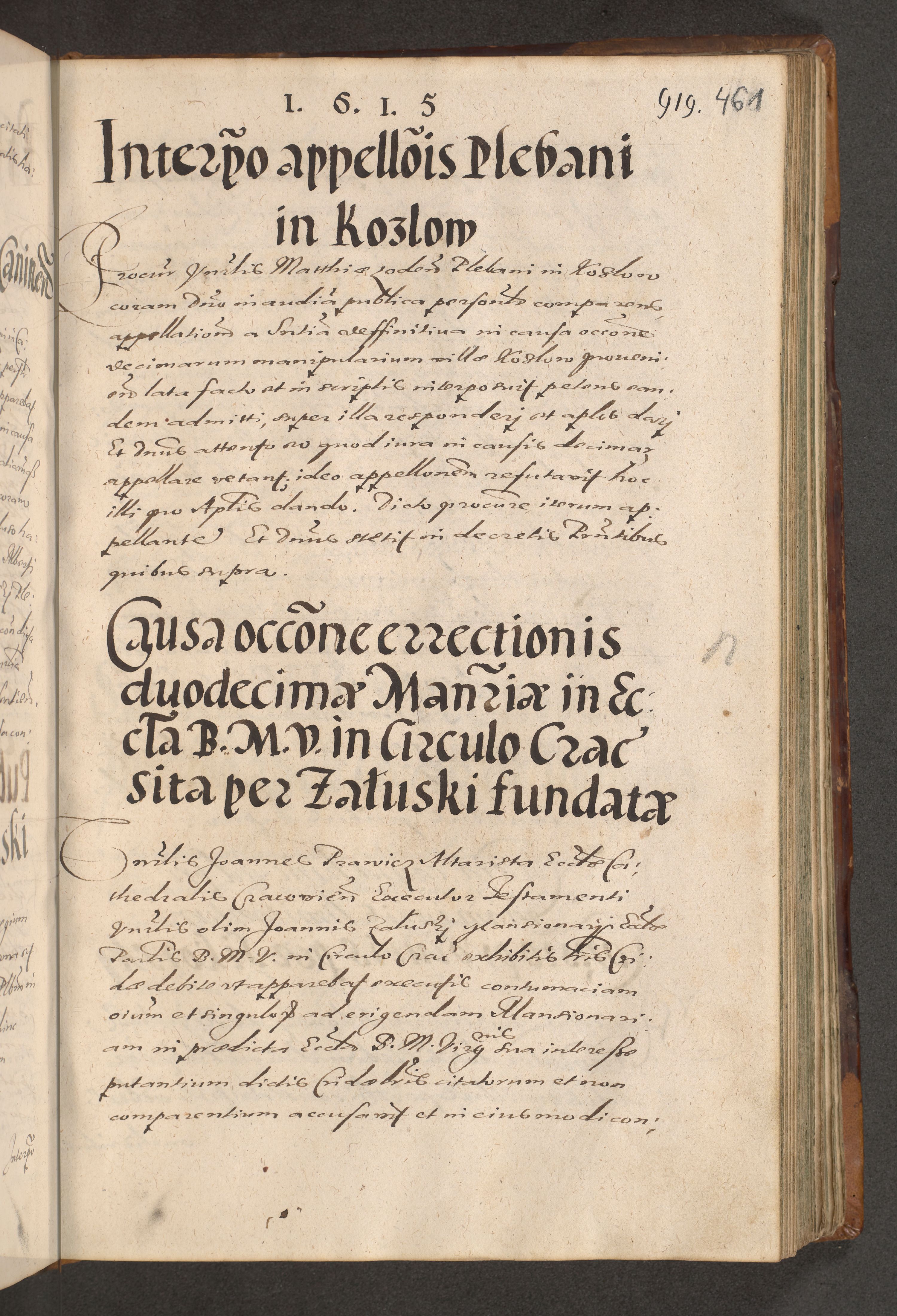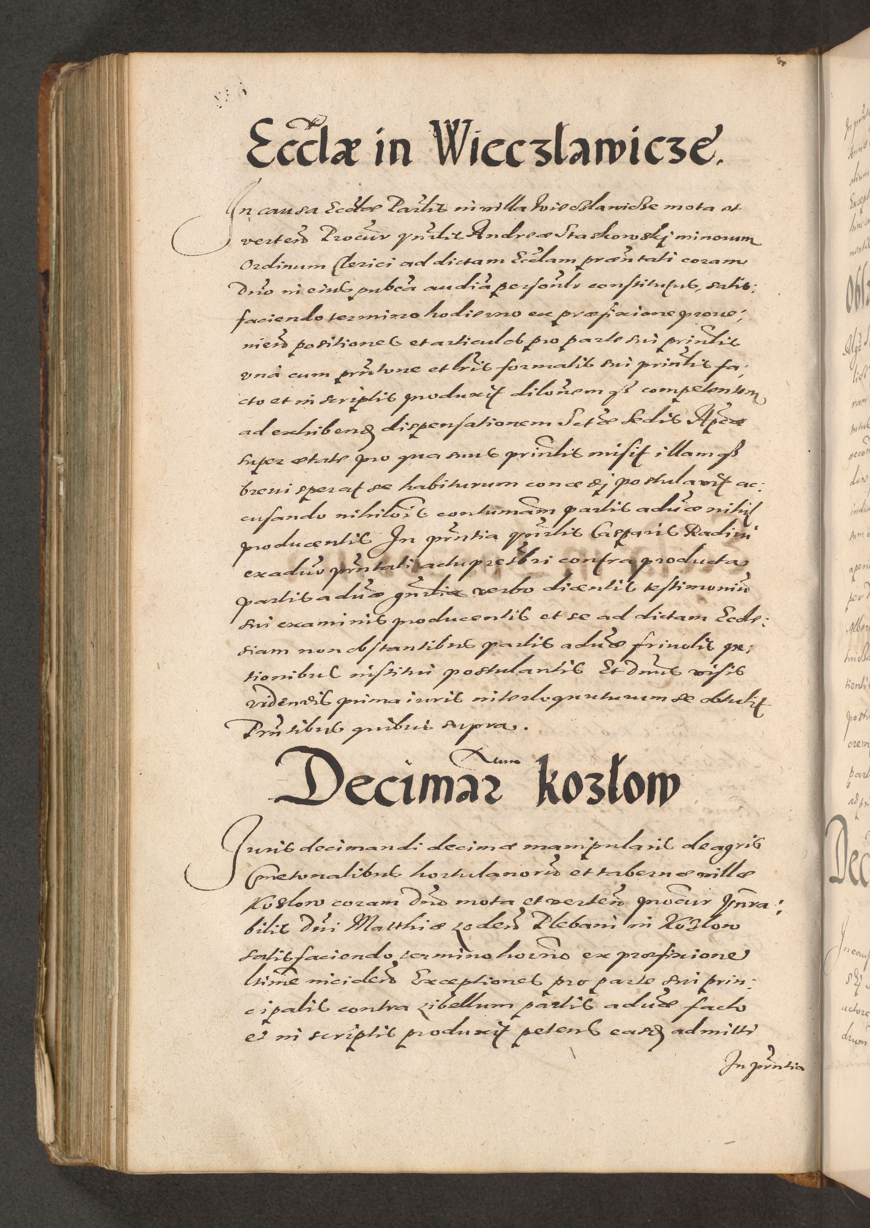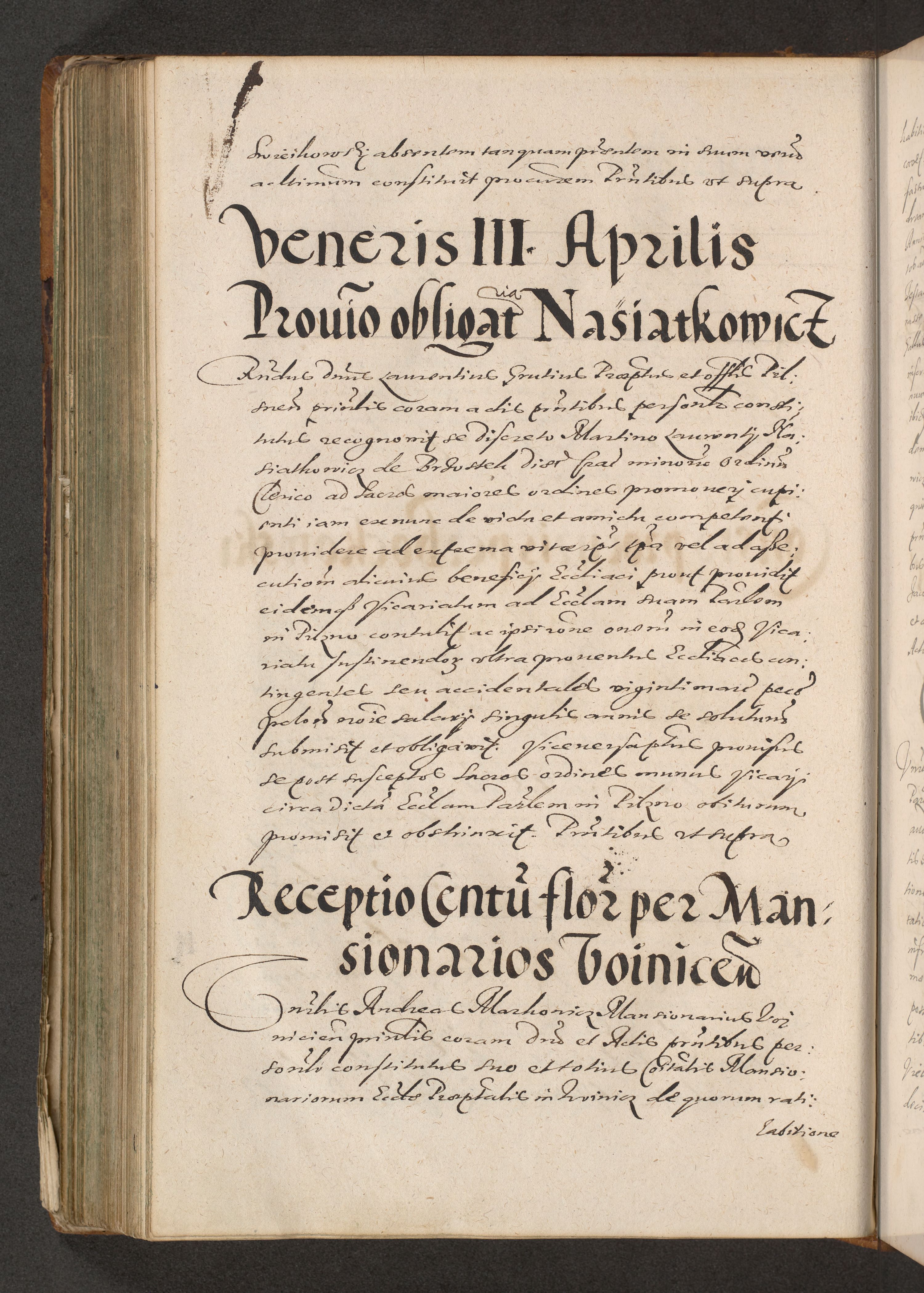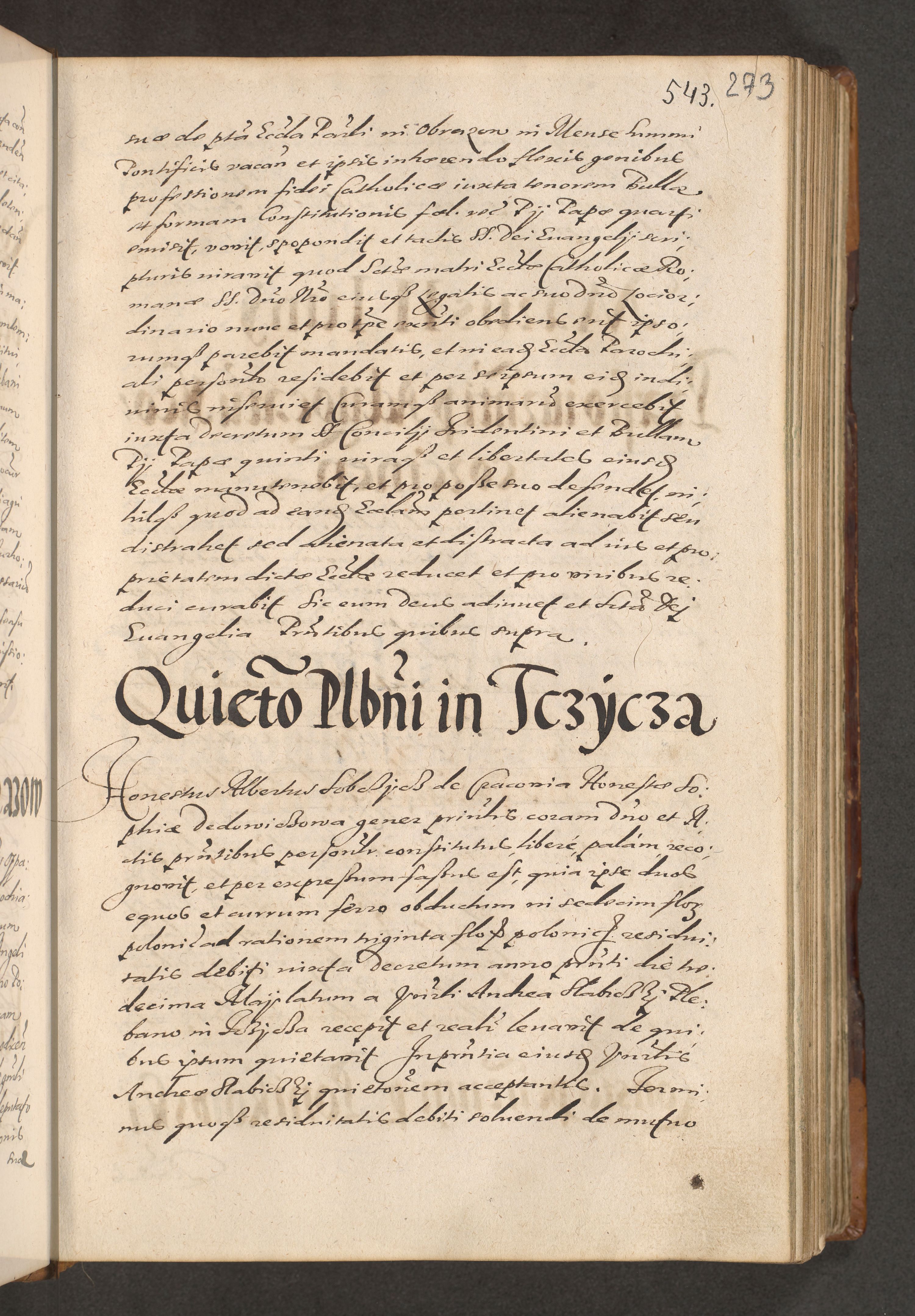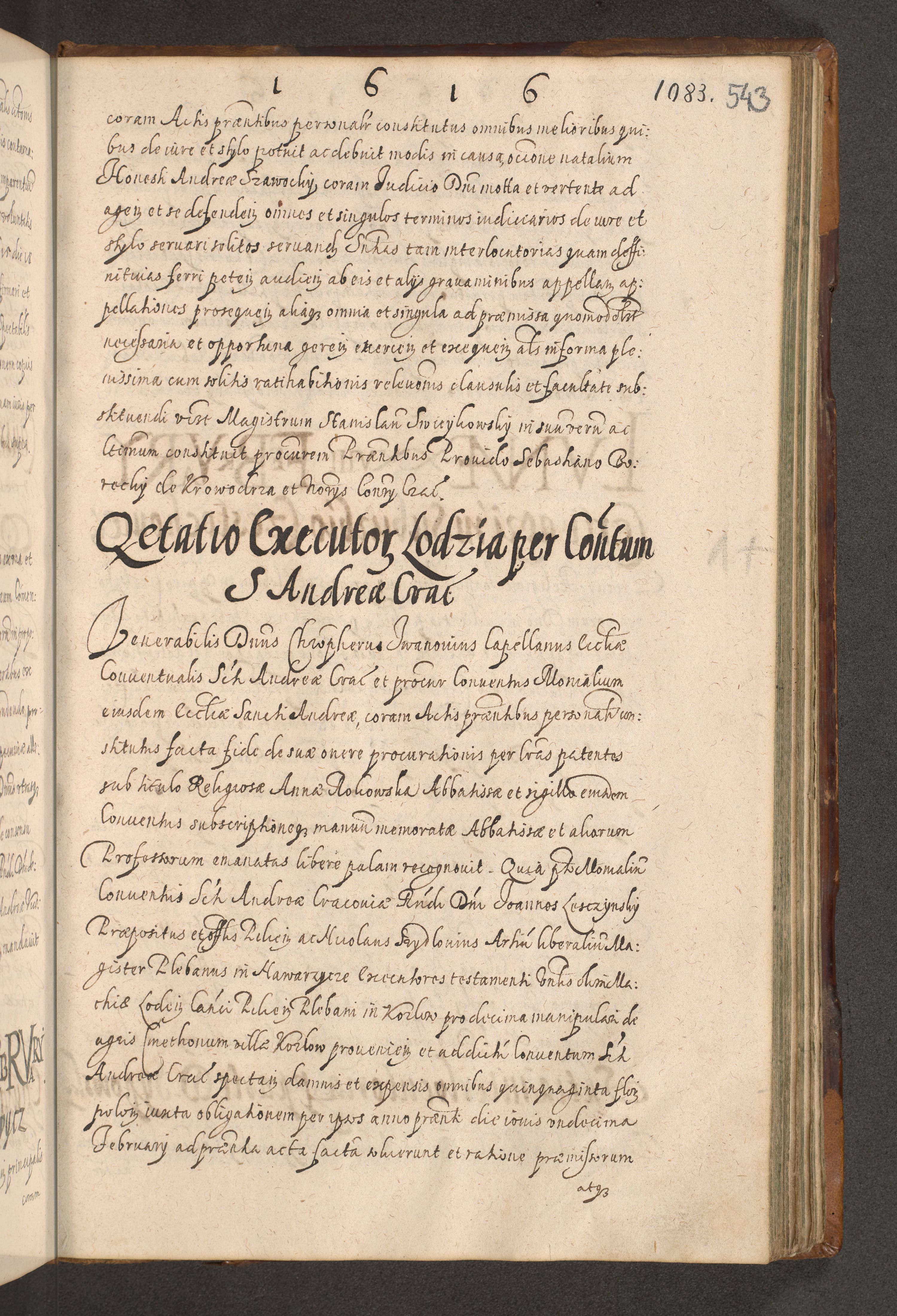 Illustrissimo et Reverendissimo in Christo Patre Domino Domino Petro Tylicki Dei et Apostolice Sedis Gratia Episcopo Cracoviensis Duce Severiensis Acta actorum causarum sententiarum tam interloquutoriarum quam definitivarum decretorum obligationum, quietationum, recognitionum, constitutionum procuratorum etc. etc. coram Admodum Reverendo Domino Thoma Oborski I. V. Doctore Canonico Vicario in Spiritualibus et Officiali generali Cracoviensis in anno Domini Millesimo Sexcentessimo Decimoquarto Cuius Indictio duodecima Pontificus SS. D. N. D. Pauli Divina providentia Papae quinti Anno decimo foeliciter incipiunt