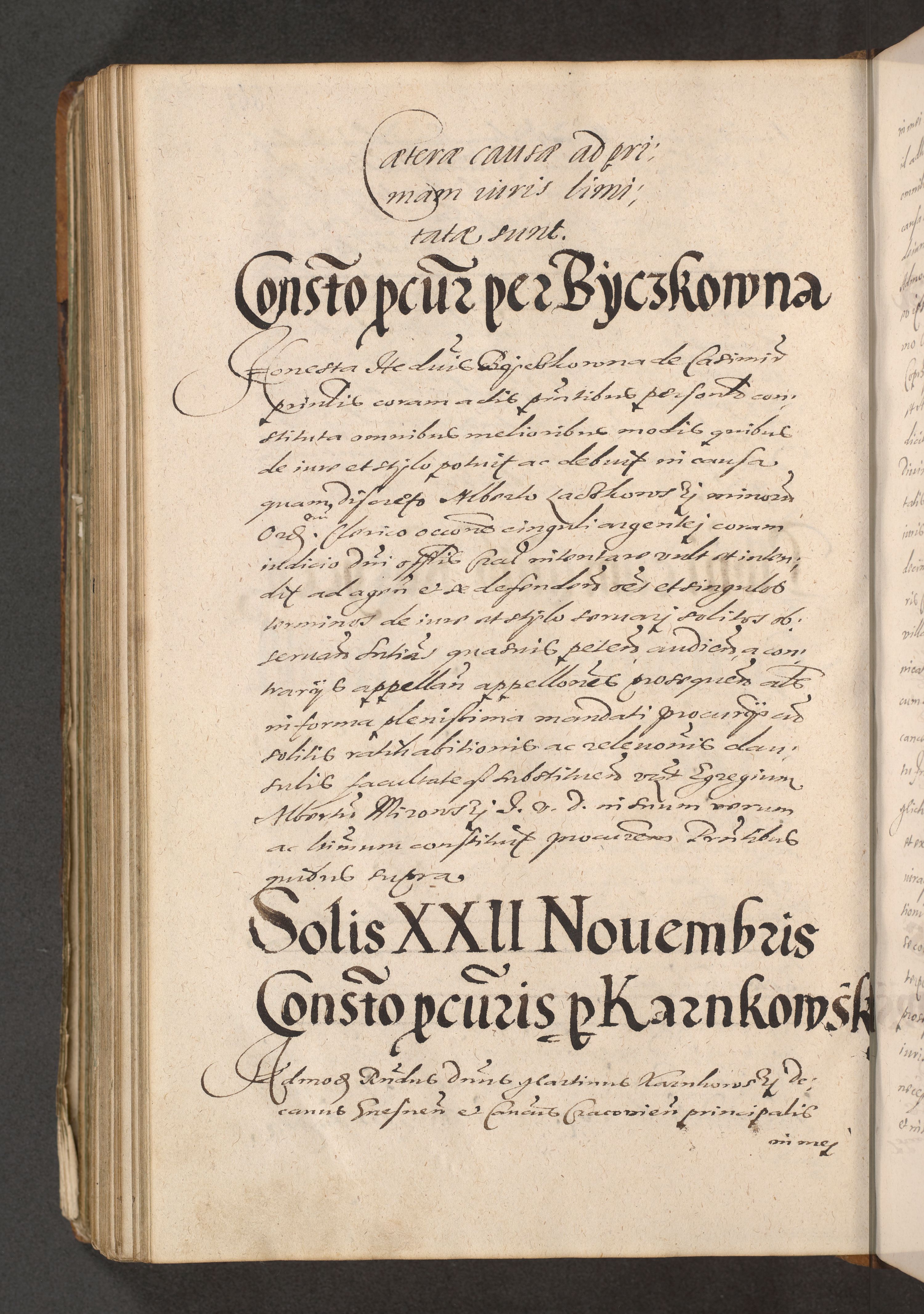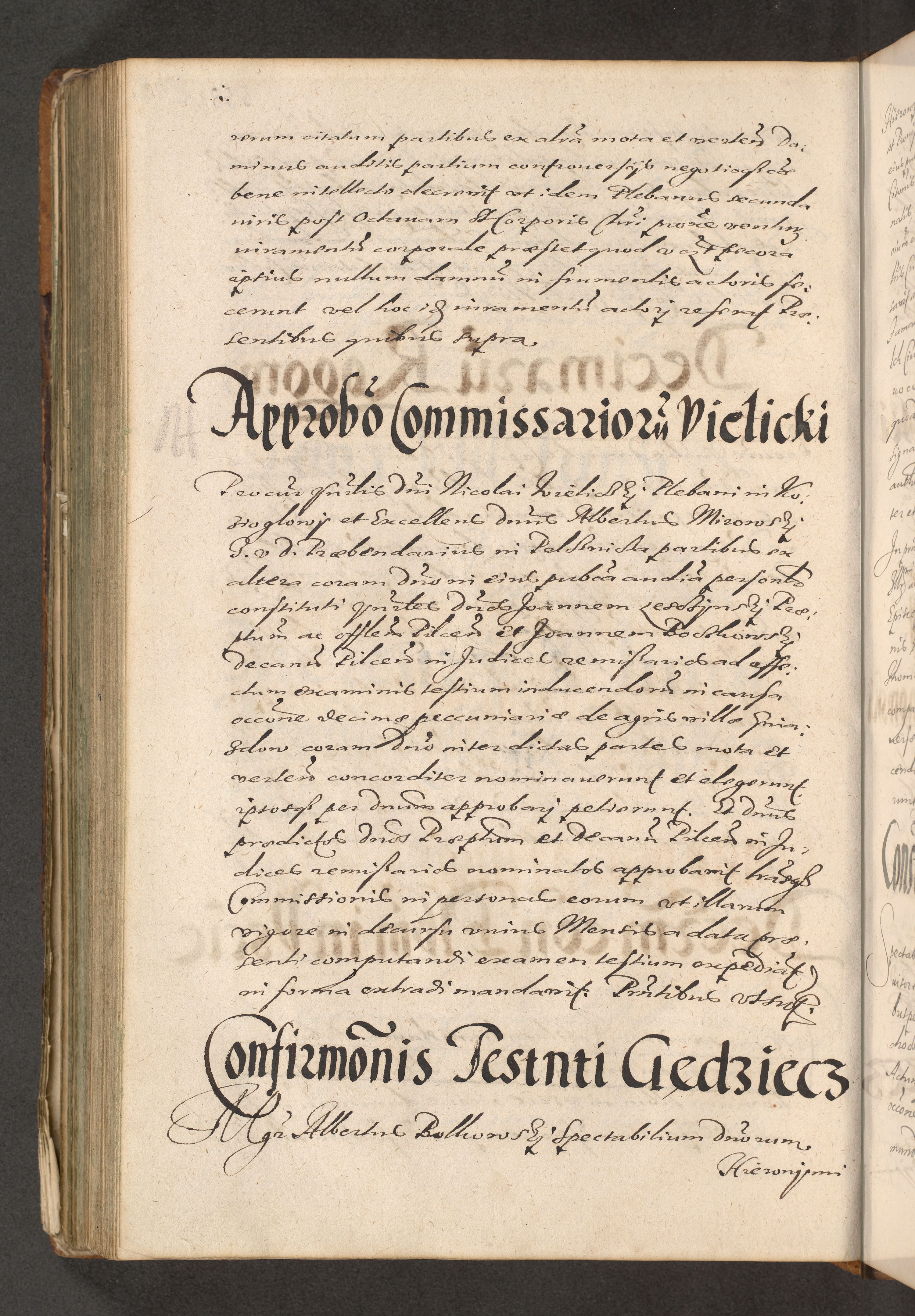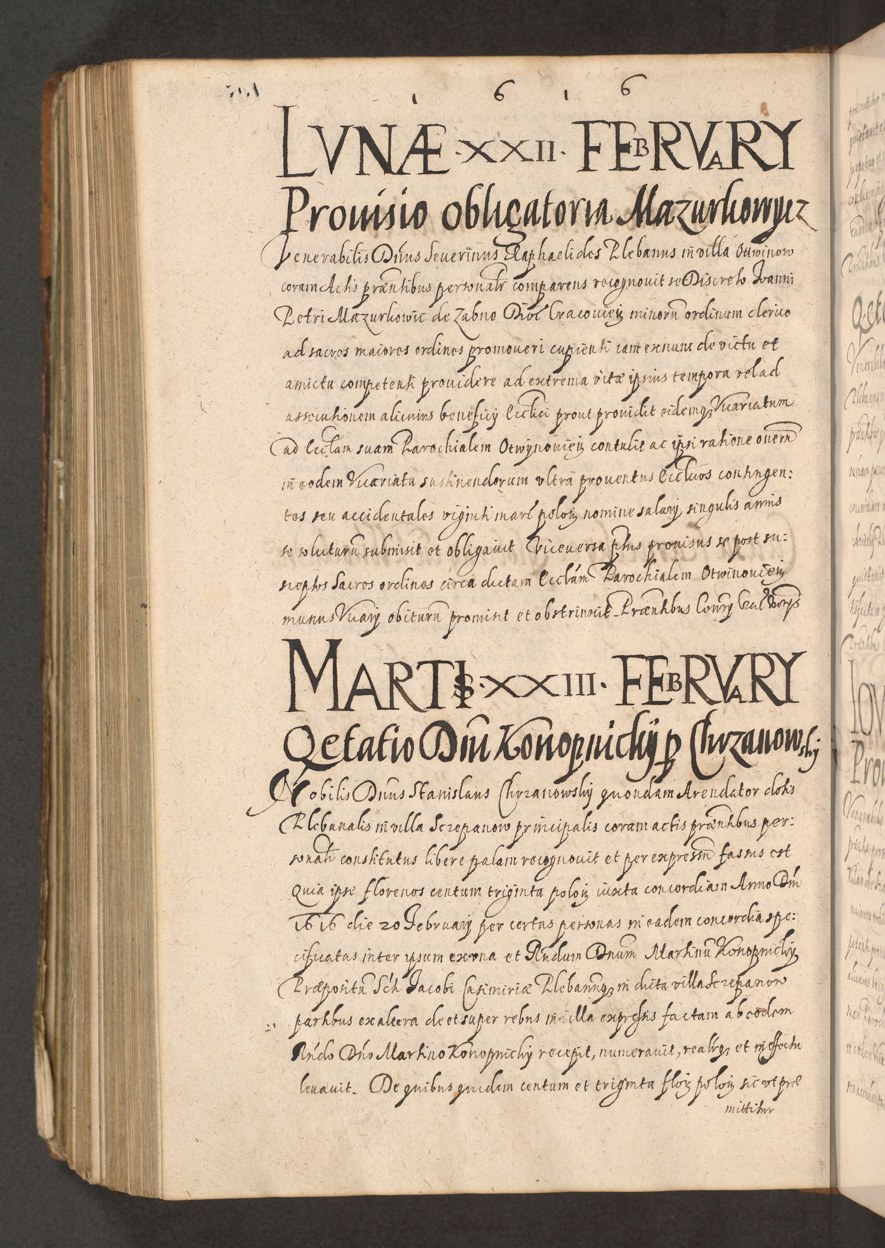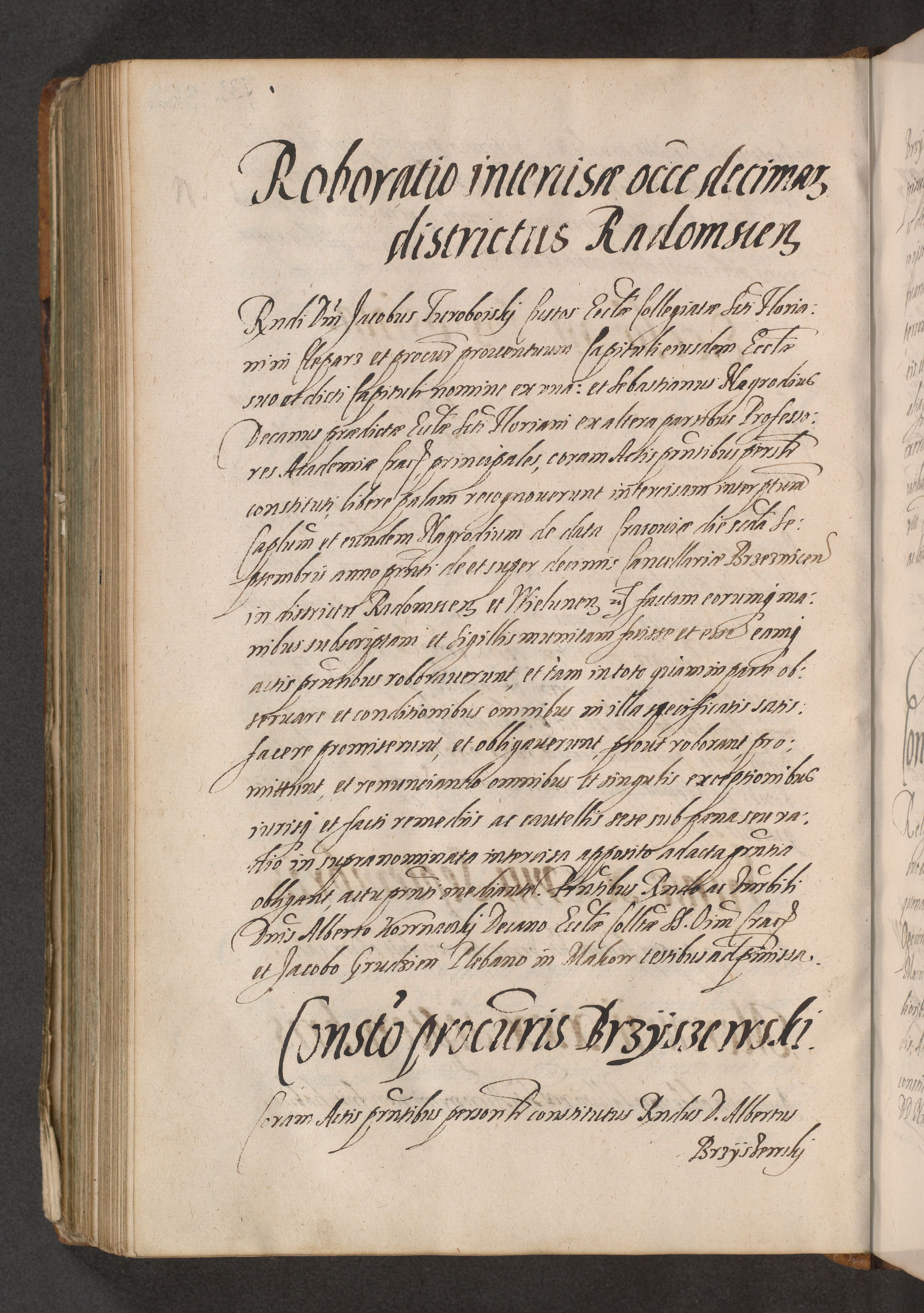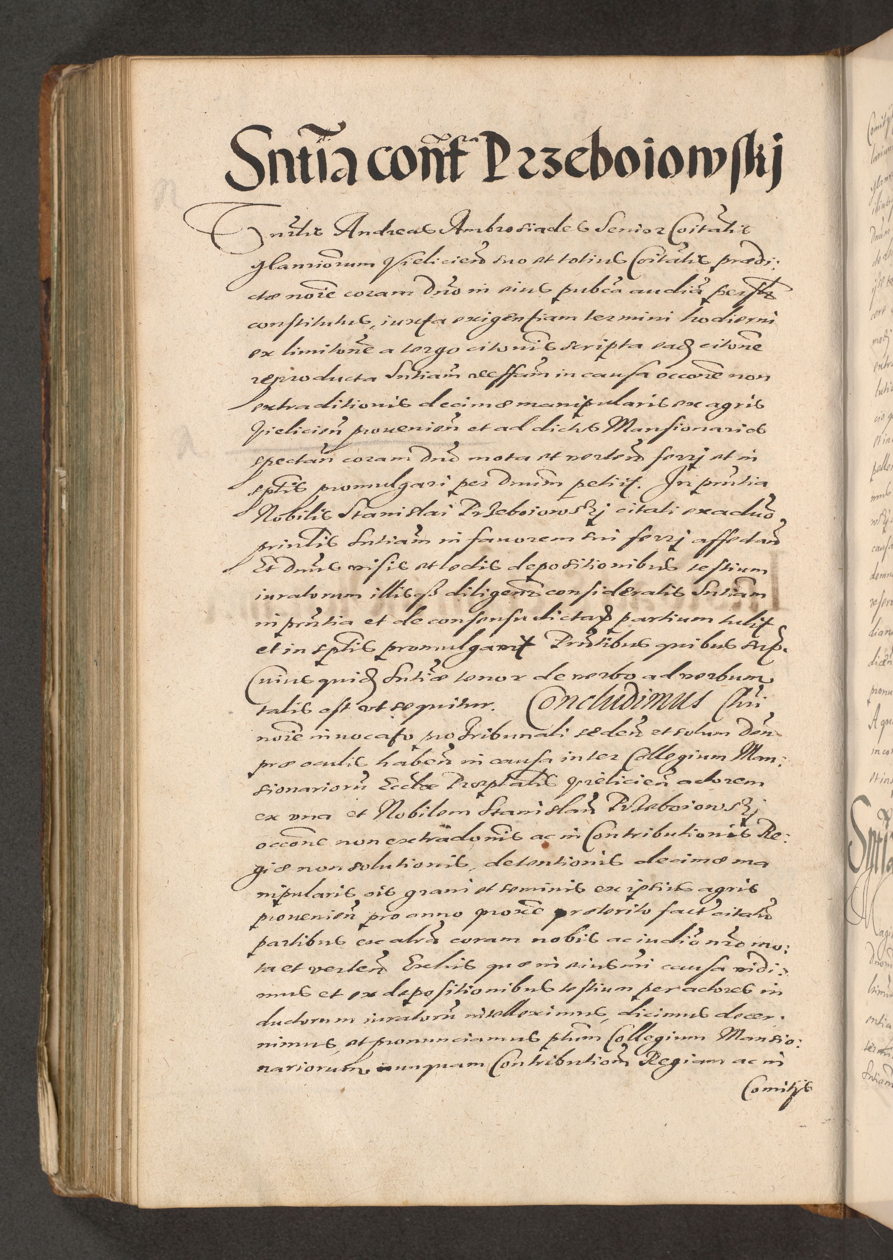 Illustrissimo et Reverendissimo in Christo Patre Domino Domino Petro Tylicki Dei et Apostolice Sedis Gratia Episcopo Cracoviensis Duce Severiensis Acta actorum causarum sententiarum tam interloquutoriarum quam definitivarum decretorum obligationum, quietationum, recognitionum, constitutionum procuratorum etc. etc. coram Admodum Reverendo Domino Thoma Oborski I. V. Doctore Canonico Vicario in Spiritualibus et Officiali generali Cracoviensis in anno Domini Millesimo Sexcentessimo Decimoquarto Cuius Indictio duodecima Pontificus SS. D. N. D. Pauli Divina providentia Papae quinti Anno decimo foeliciter incipiunt