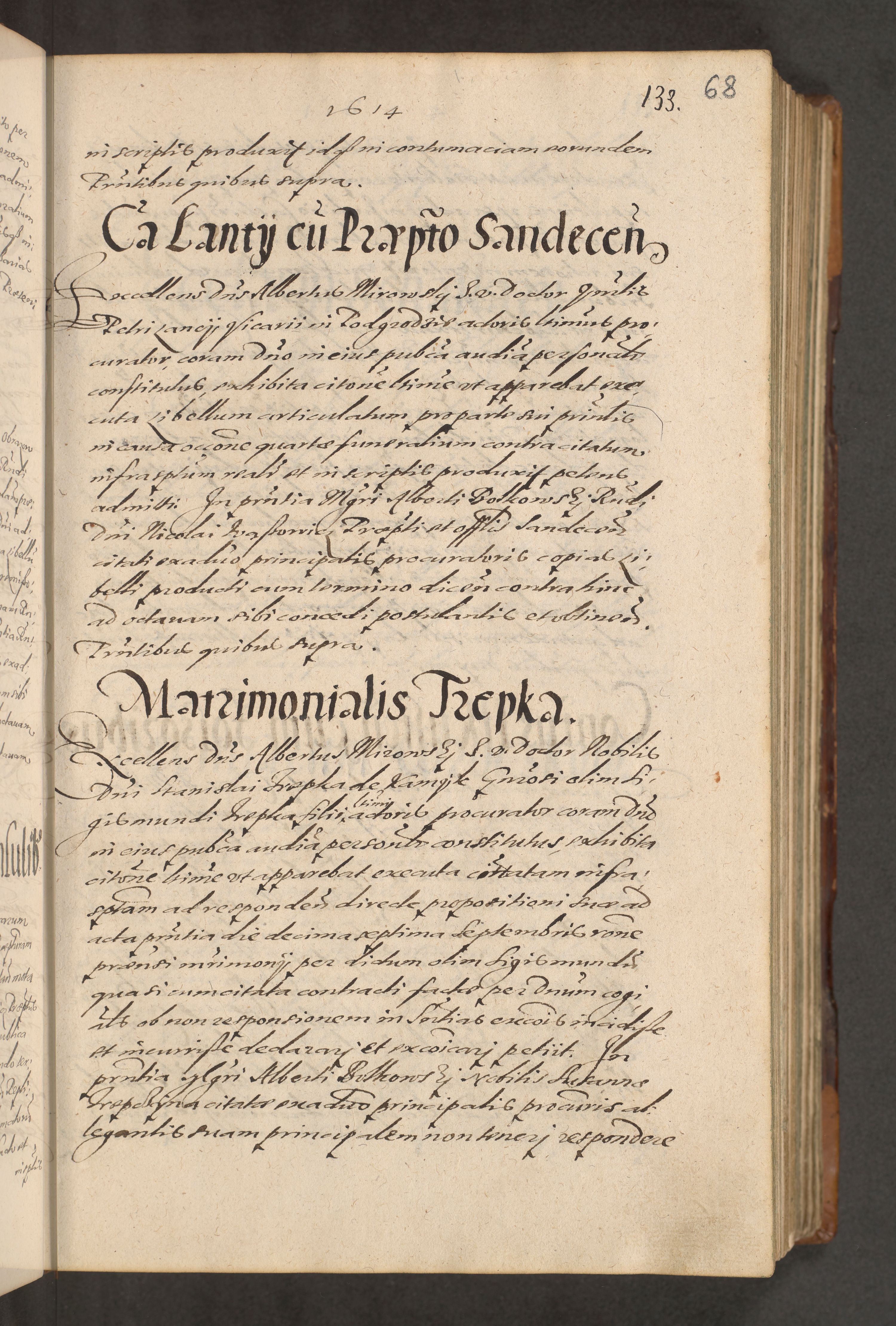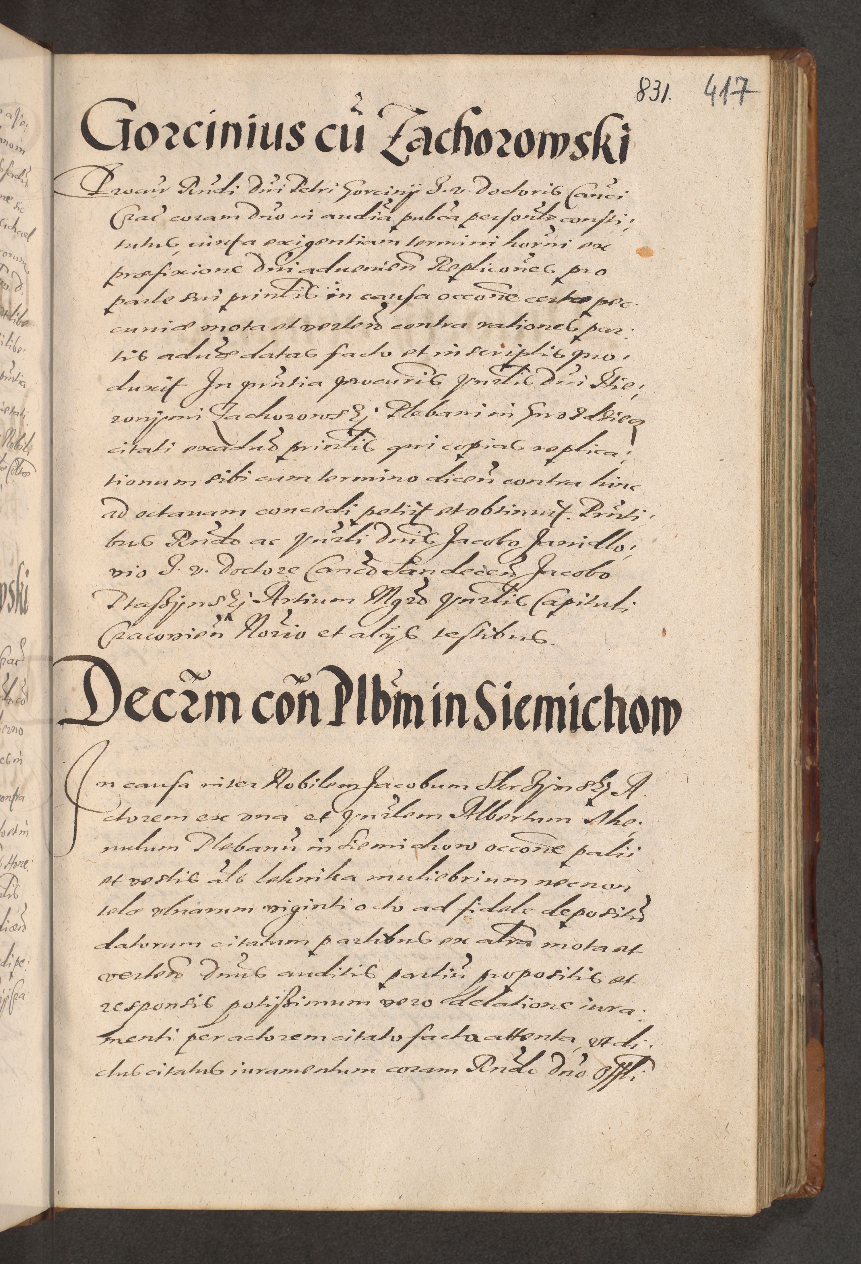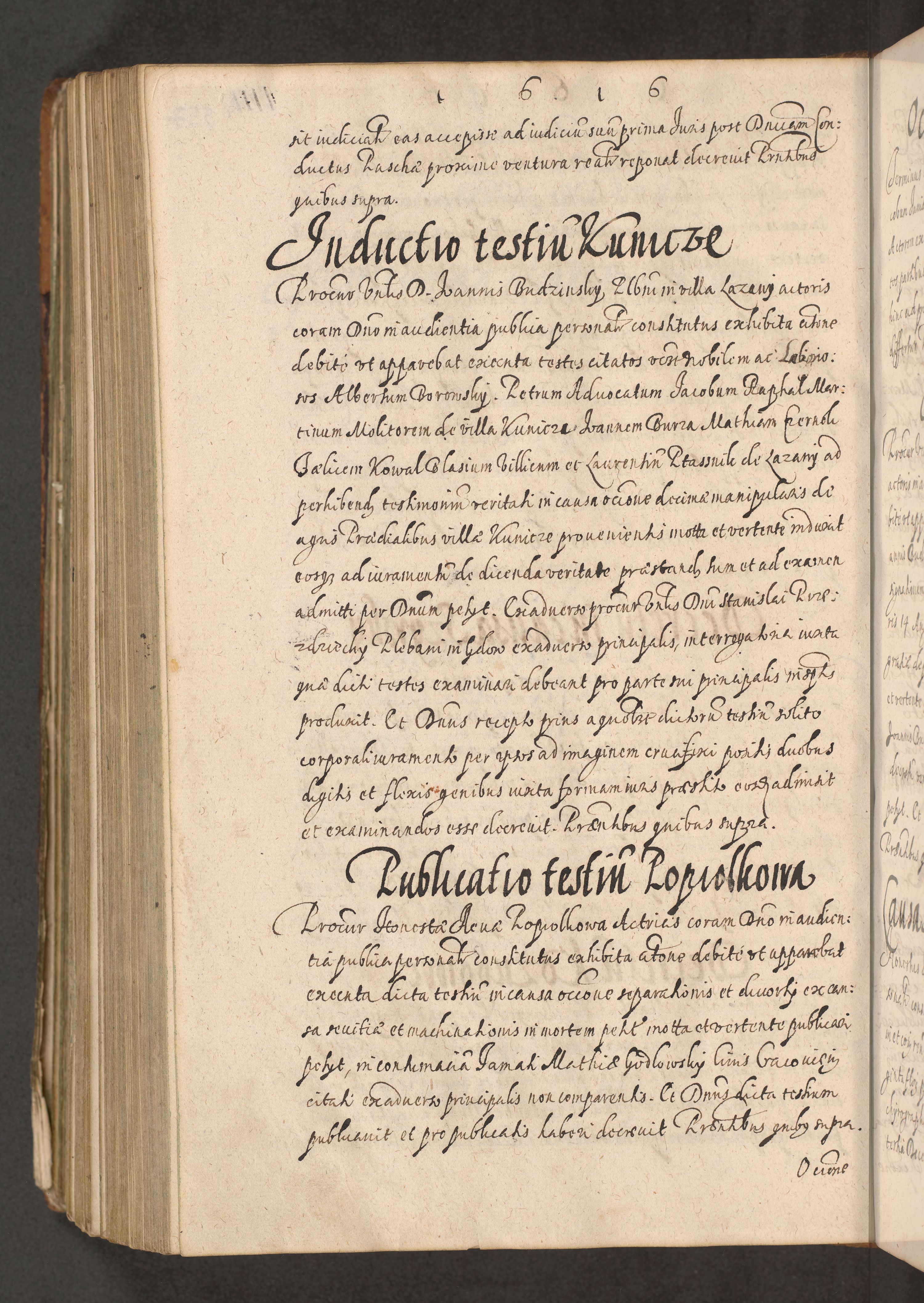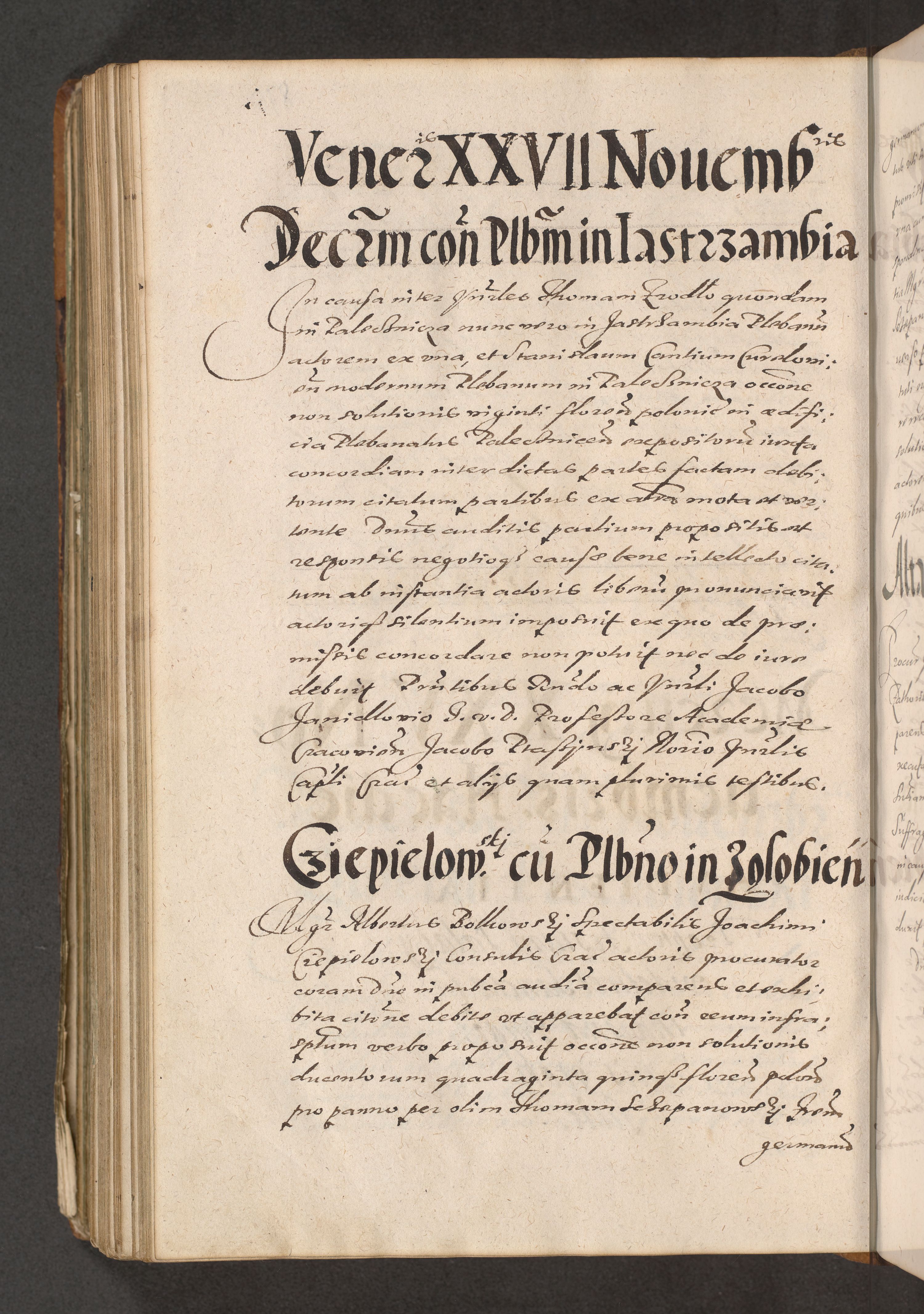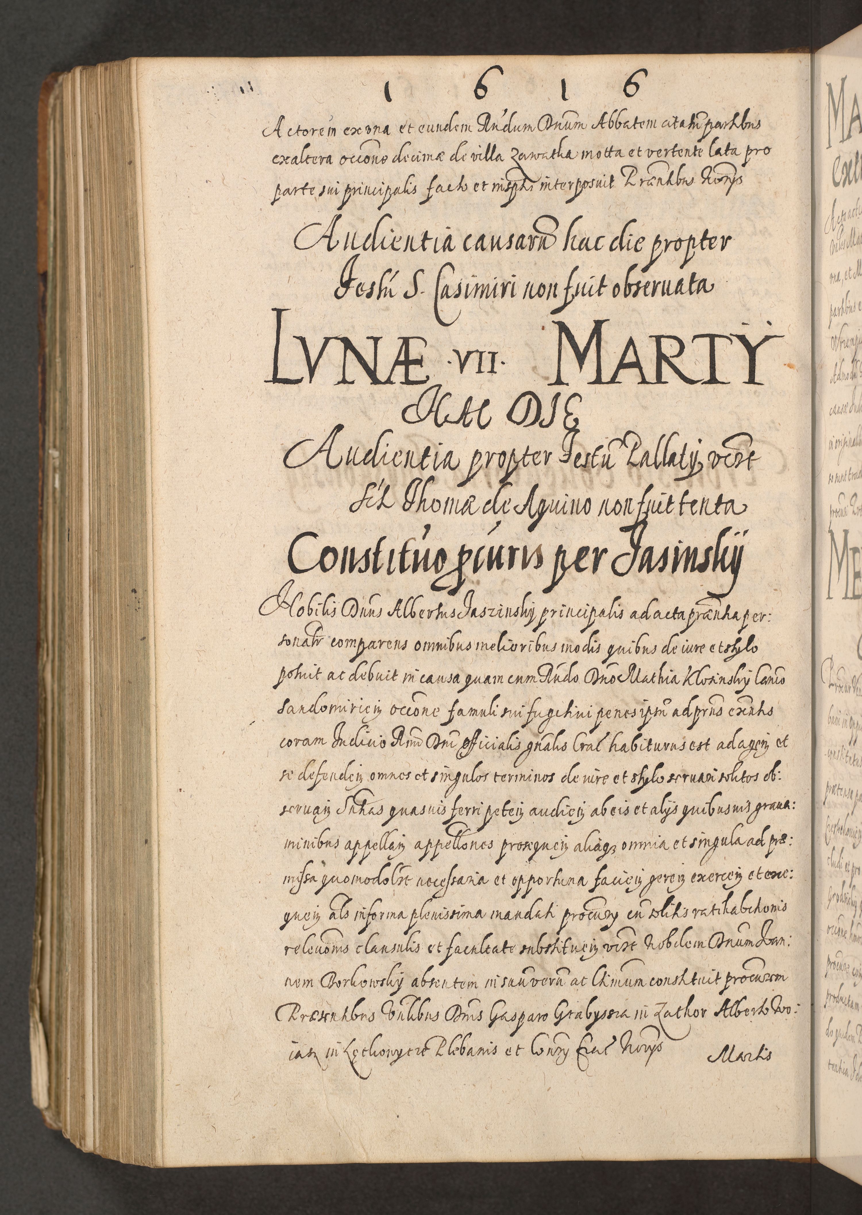 Illustrissimo et Reverendissimo in Christo Patre Domino Domino Petro Tylicki Dei et Apostolice Sedis Gratia Episcopo Cracoviensis Duce Severiensis Acta actorum causarum sententiarum tam interloquutoriarum quam definitivarum decretorum obligationum, quietationum, recognitionum, constitutionum procuratorum etc. etc. coram Admodum Reverendo Domino Thoma Oborski I. V. Doctore Canonico Vicario in Spiritualibus et Officiali generali Cracoviensis in anno Domini Millesimo Sexcentessimo Decimoquarto Cuius Indictio duodecima Pontificus SS. D. N. D. Pauli Divina providentia Papae quinti Anno decimo foeliciter incipiunt
