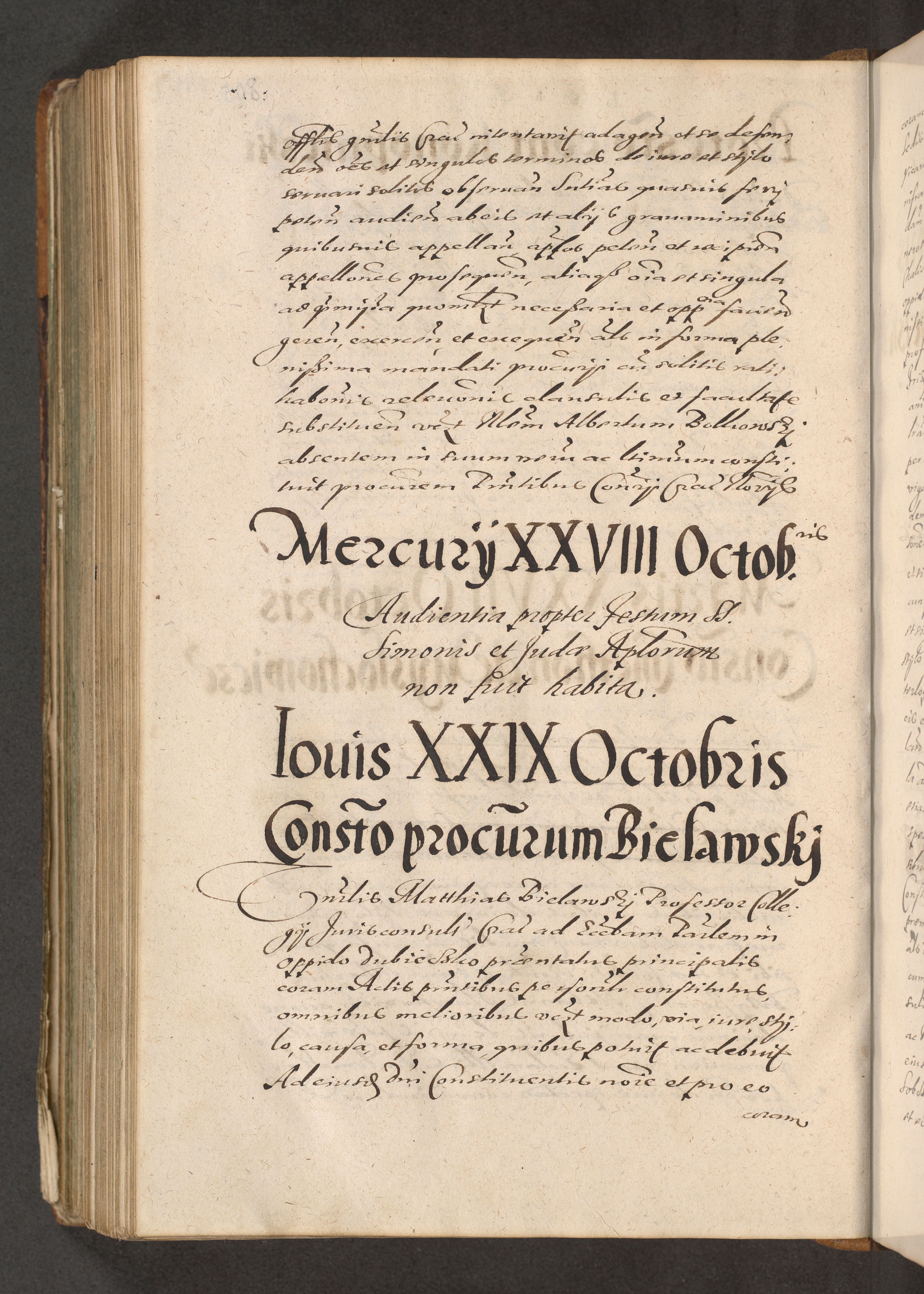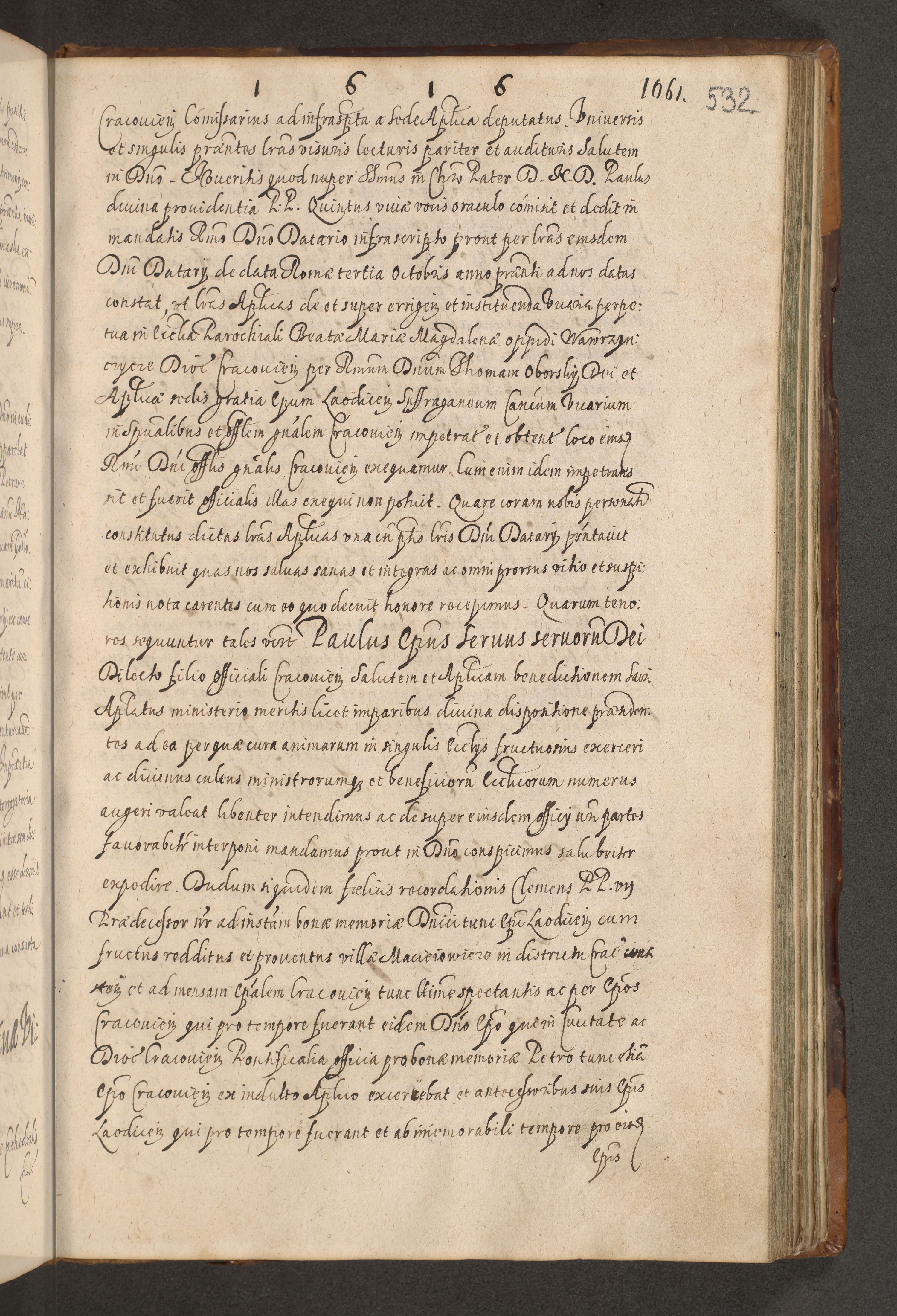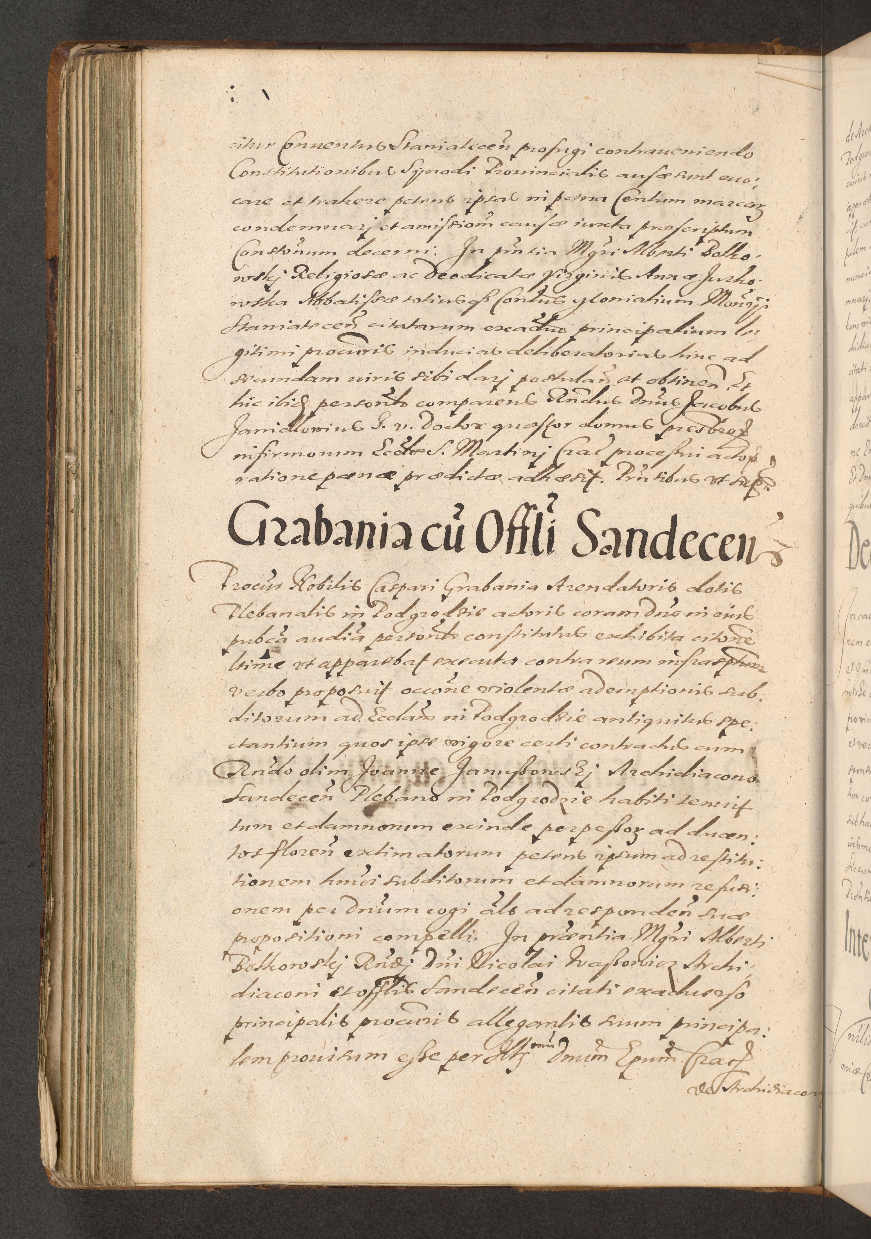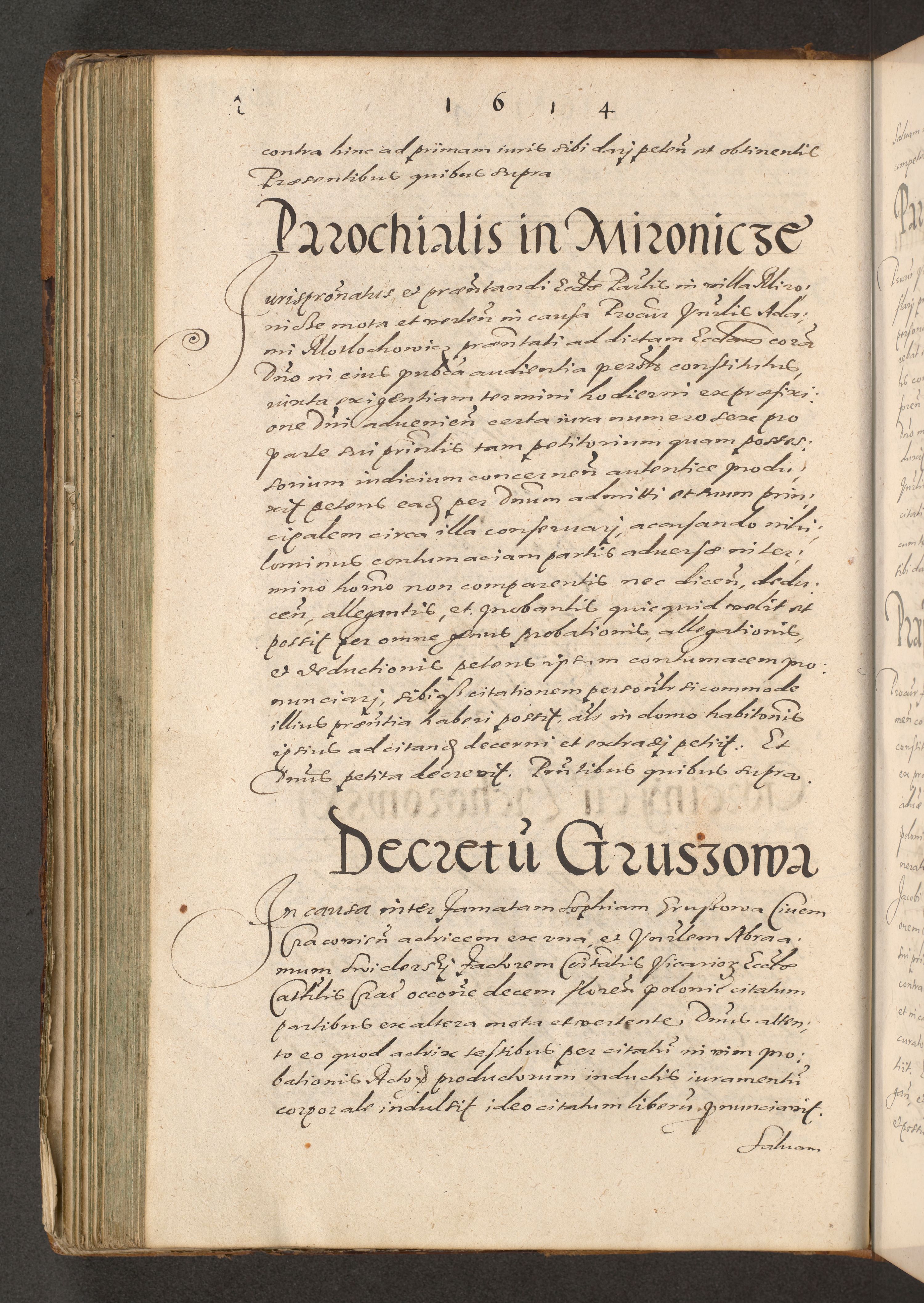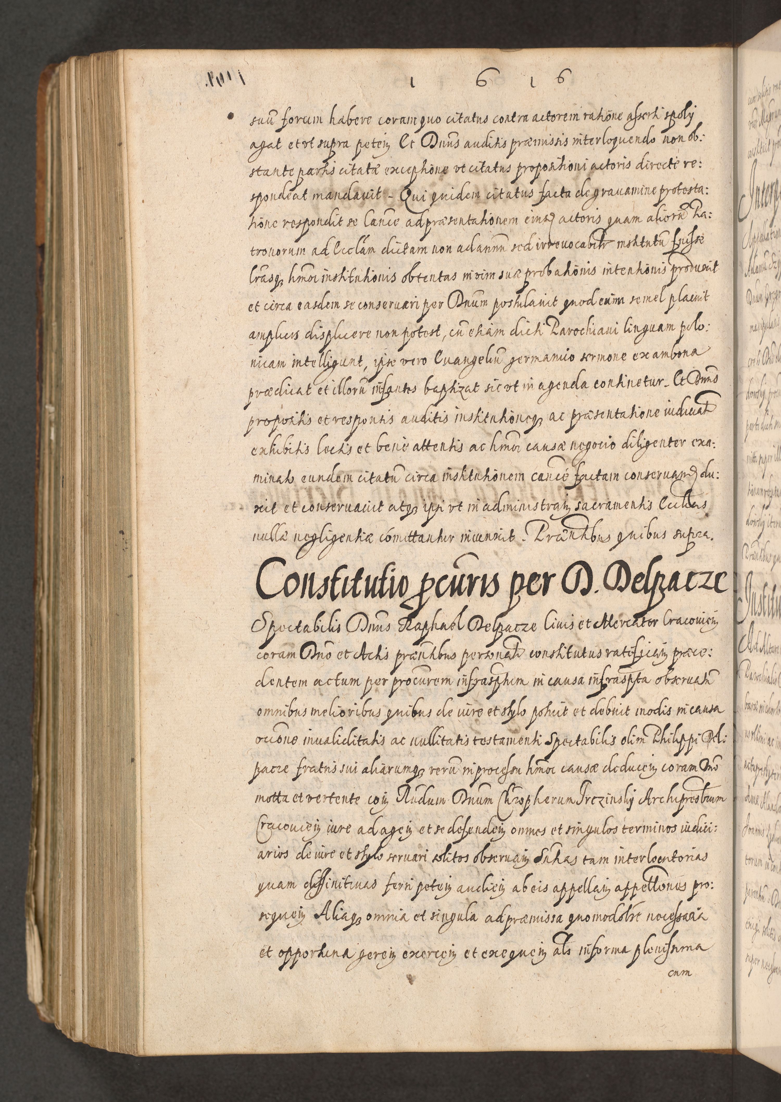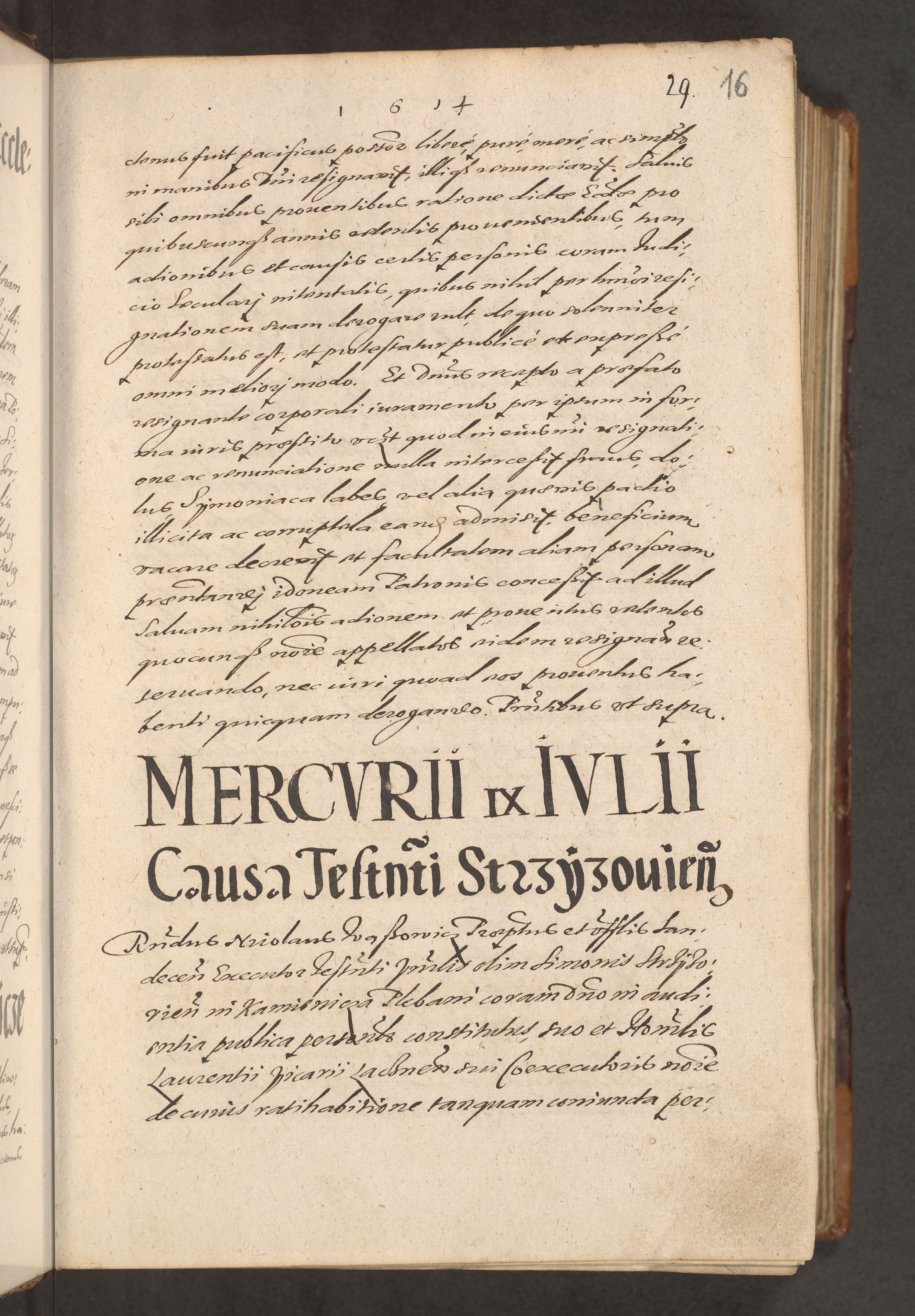 Illustrissimo et Reverendissimo in Christo Patre Domino Domino Petro Tylicki Dei et Apostolice Sedis Gratia Episcopo Cracoviensis Duce Severiensis Acta actorum causarum sententiarum tam interloquutoriarum quam definitivarum decretorum obligationum, quietationum, recognitionum, constitutionum procuratorum etc. etc. coram Admodum Reverendo Domino Thoma Oborski I. V. Doctore Canonico Vicario in Spiritualibus et Officiali generali Cracoviensis in anno Domini Millesimo Sexcentessimo Decimoquarto Cuius Indictio duodecima Pontificus SS. D. N. D. Pauli Divina providentia Papae quinti Anno decimo foeliciter incipiunt