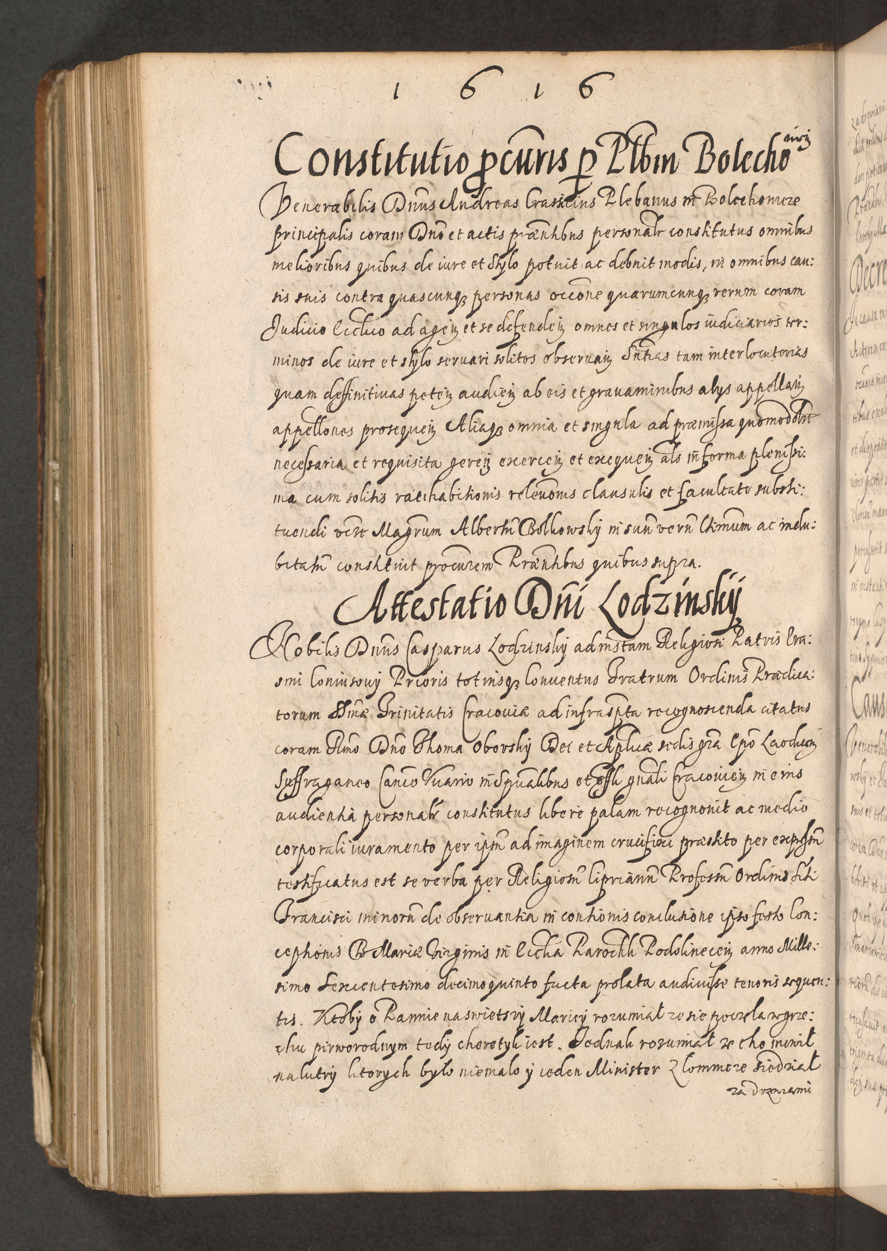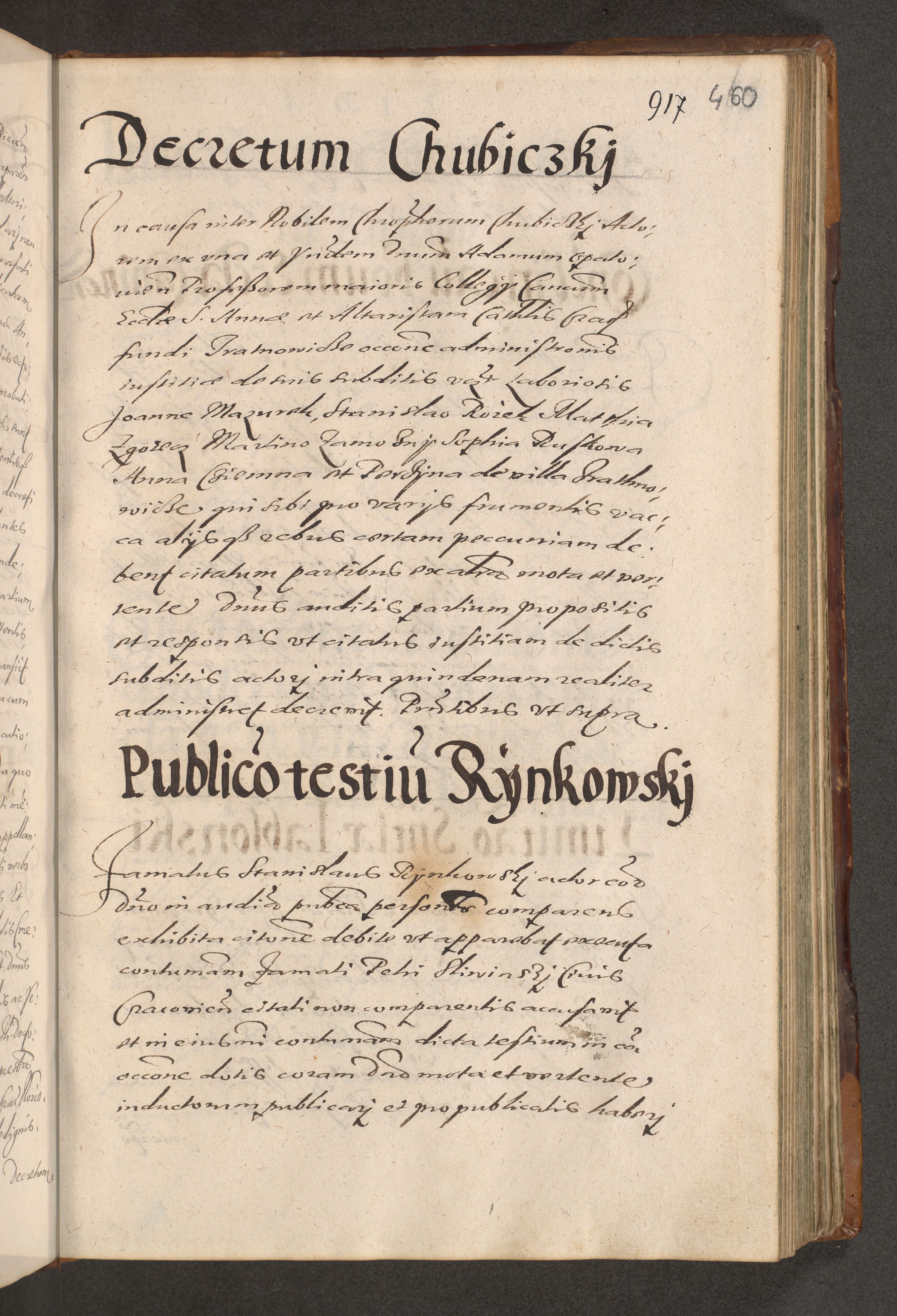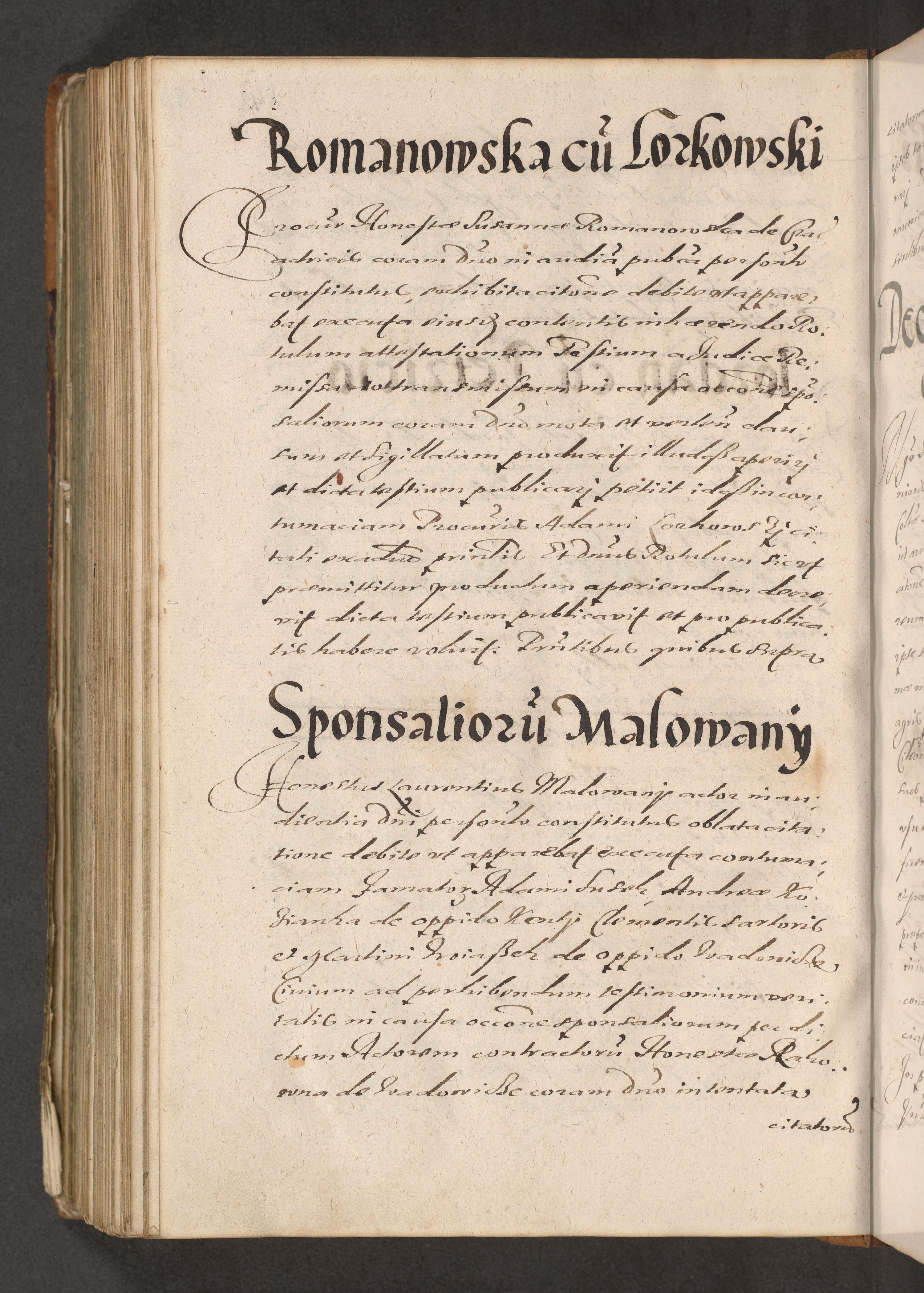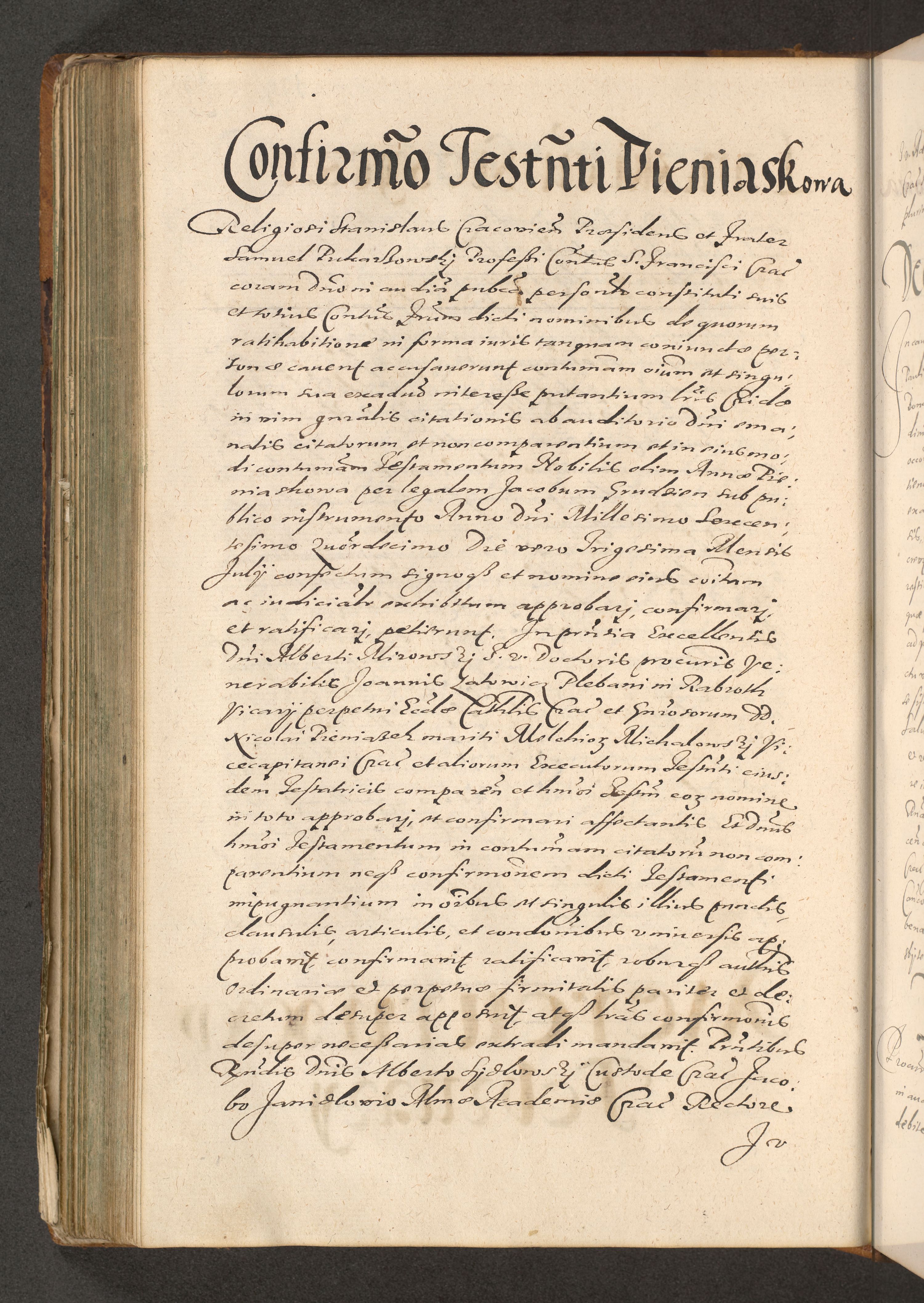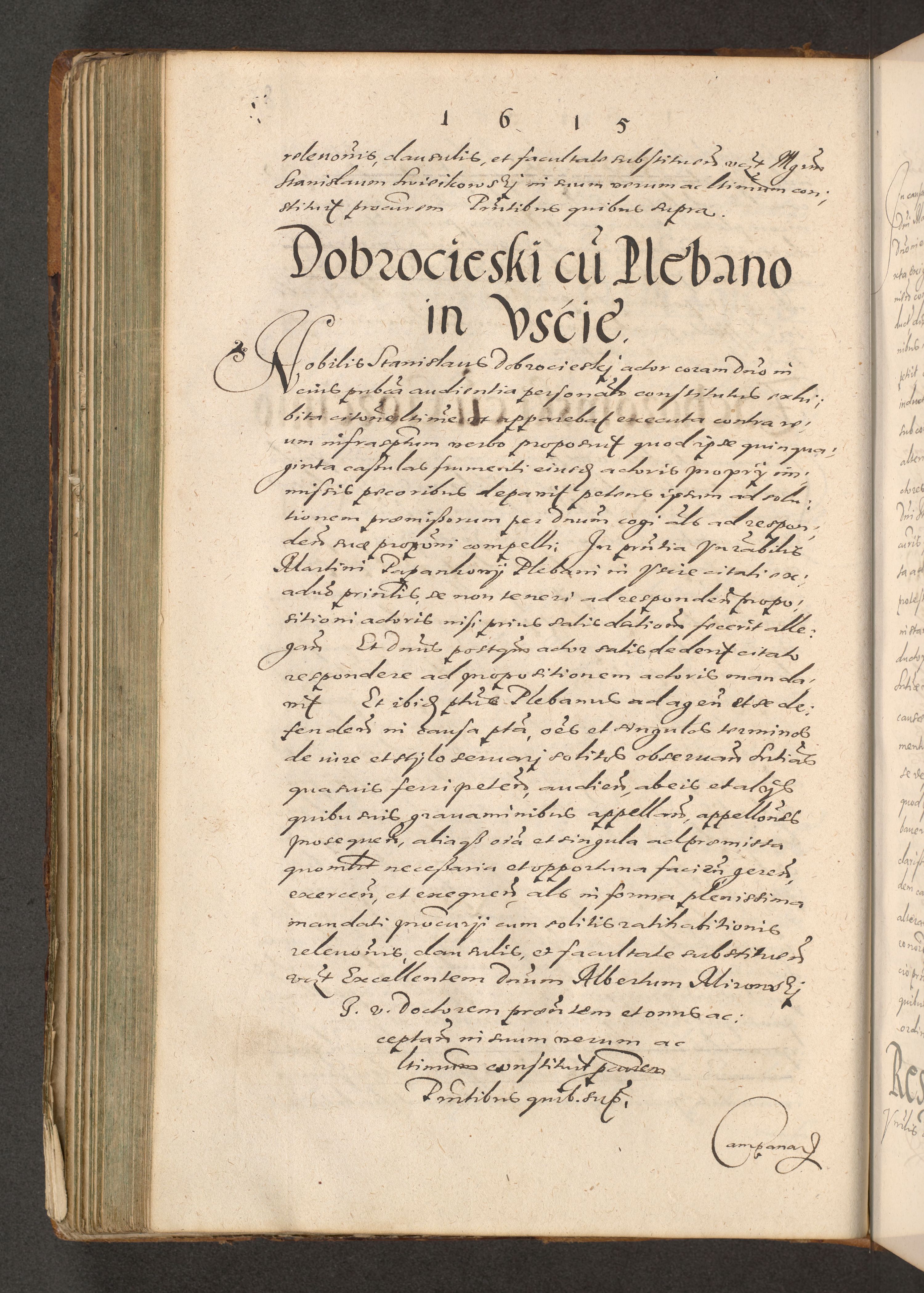 Illustrissimo et Reverendissimo in Christo Patre Domino Domino Petro Tylicki Dei et Apostolice Sedis Gratia Episcopo Cracoviensis Duce Severiensis Acta actorum causarum sententiarum tam interloquutoriarum quam definitivarum decretorum obligationum, quietationum, recognitionum, constitutionum procuratorum etc. etc. coram Admodum Reverendo Domino Thoma Oborski I. V. Doctore Canonico Vicario in Spiritualibus et Officiali generali Cracoviensis in anno Domini Millesimo Sexcentessimo Decimoquarto Cuius Indictio duodecima Pontificus SS. D. N. D. Pauli Divina providentia Papae quinti Anno decimo foeliciter incipiunt