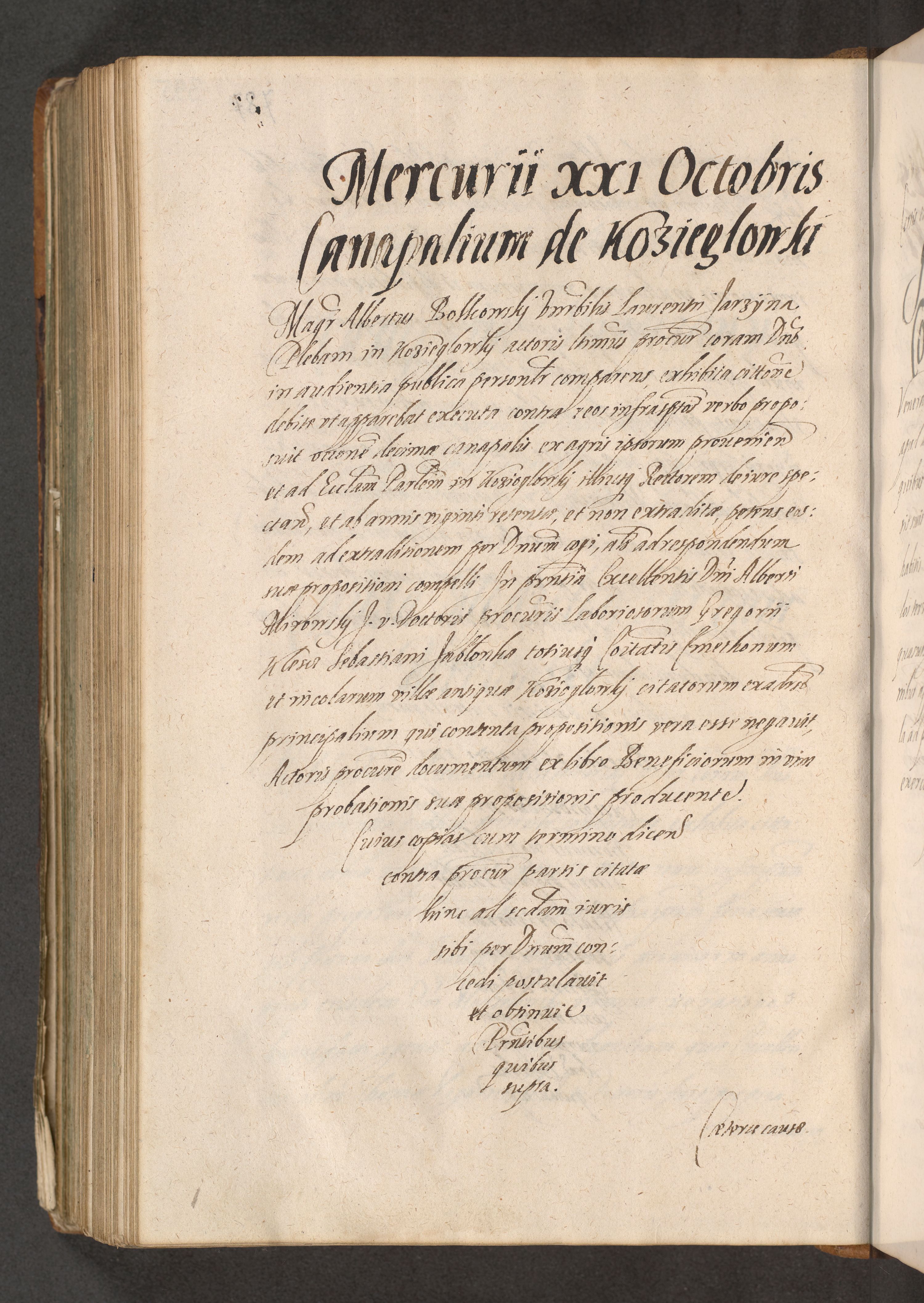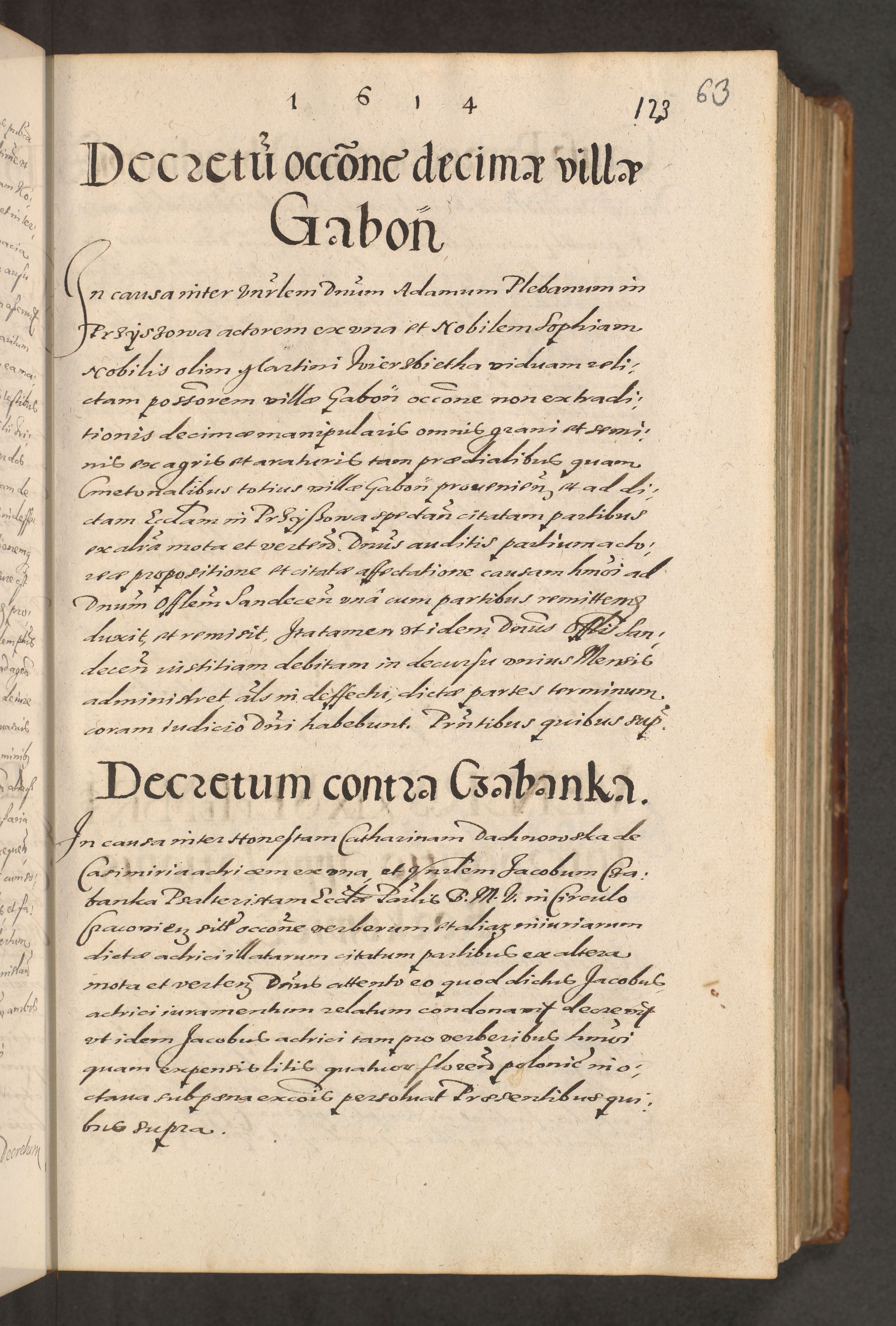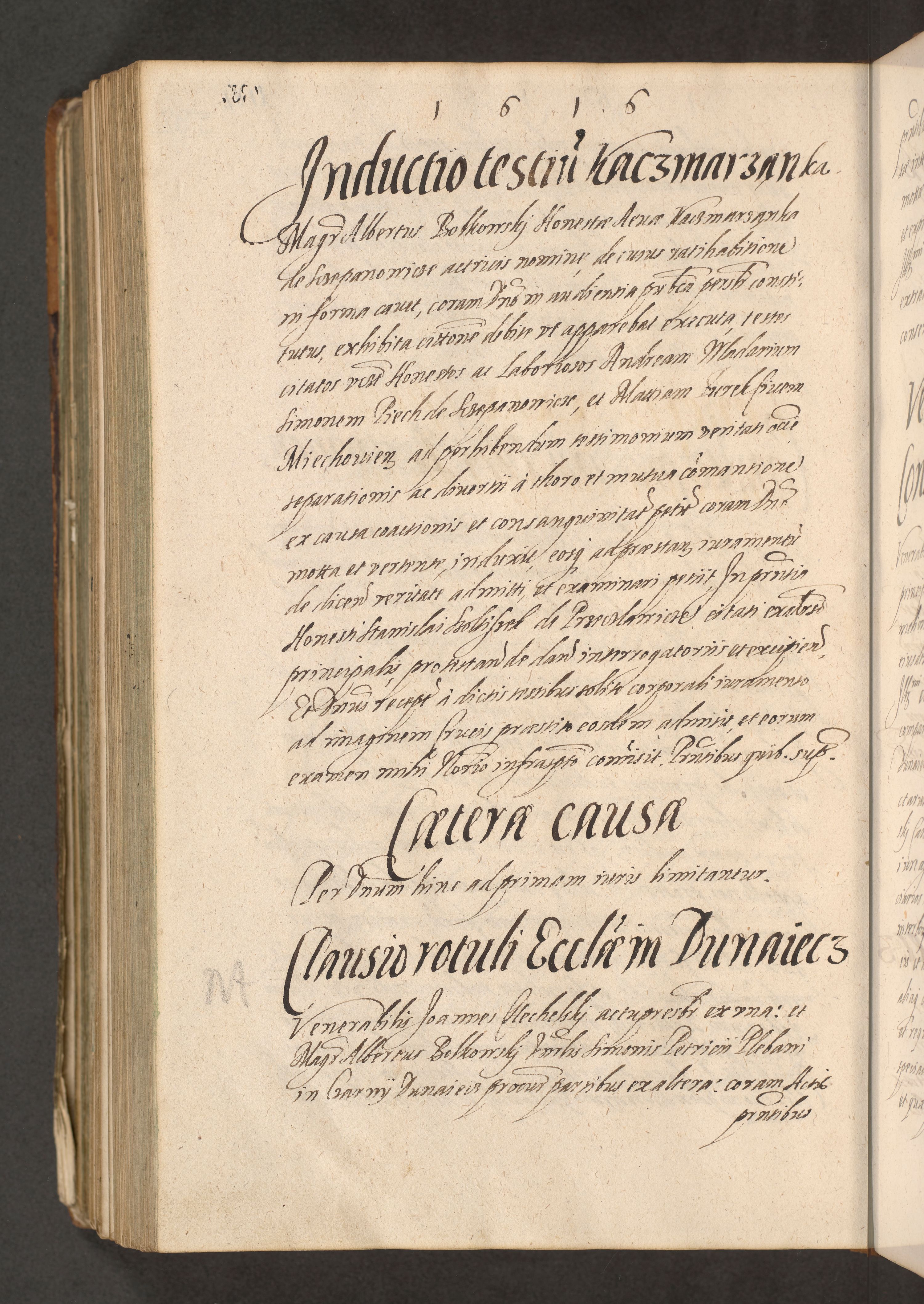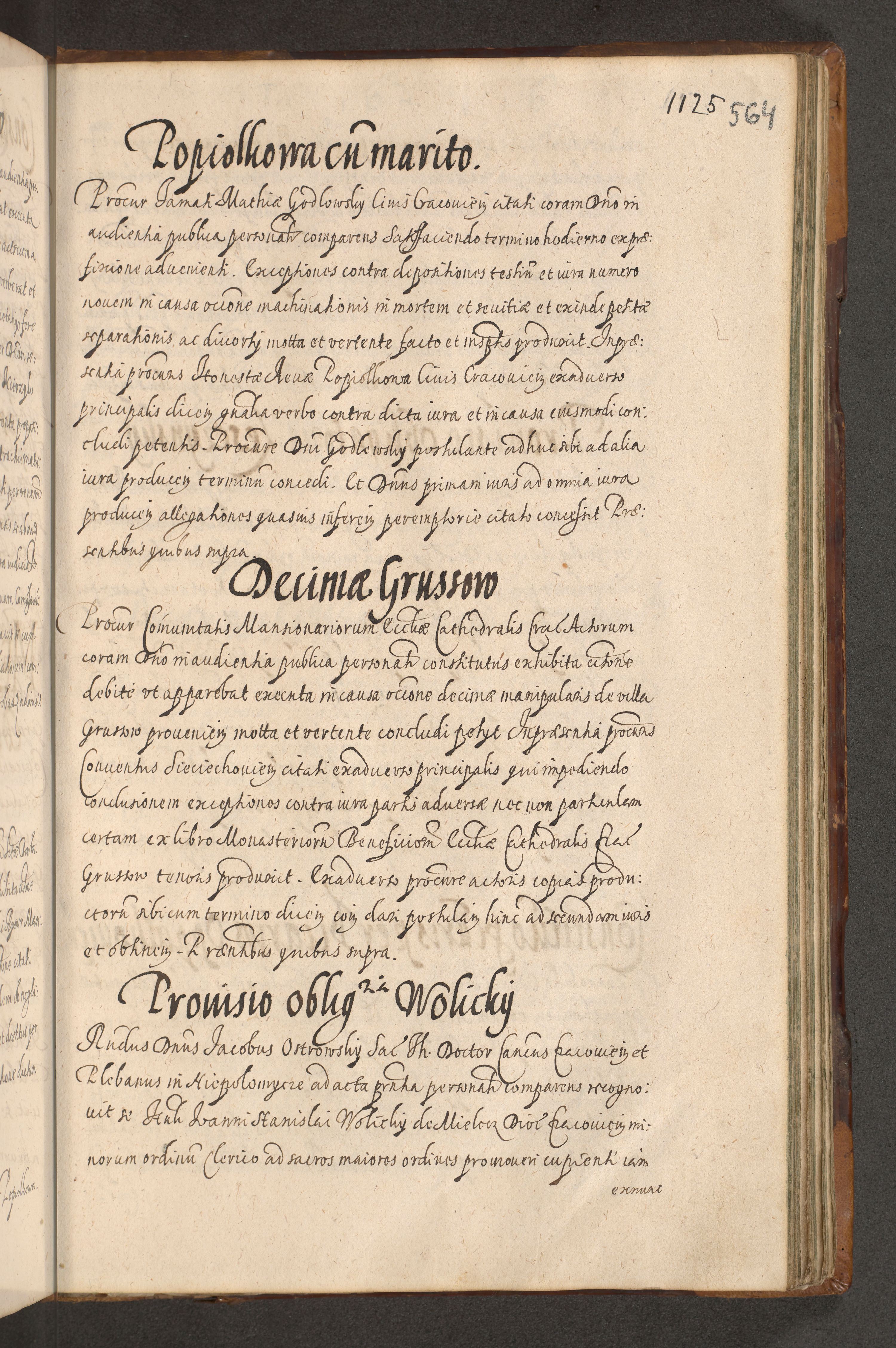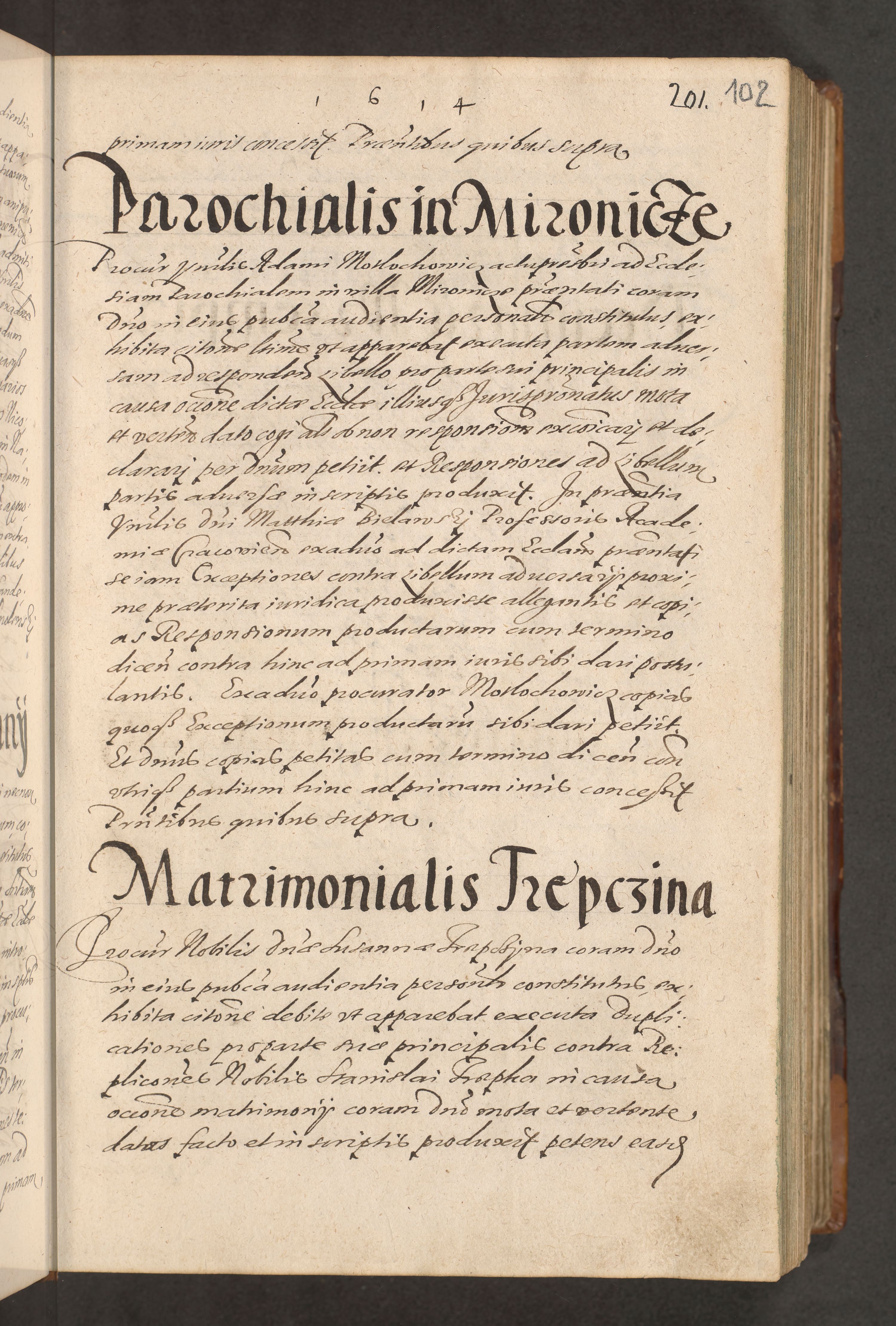 Illustrissimo et Reverendissimo in Christo Patre Domino Domino Petro Tylicki Dei et Apostolice Sedis Gratia Episcopo Cracoviensis Duce Severiensis Acta actorum causarum sententiarum tam interloquutoriarum quam definitivarum decretorum obligationum, quietationum, recognitionum, constitutionum procuratorum etc. etc. coram Admodum Reverendo Domino Thoma Oborski I. V. Doctore Canonico Vicario in Spiritualibus et Officiali generali Cracoviensis in anno Domini Millesimo Sexcentessimo Decimoquarto Cuius Indictio duodecima Pontificus SS. D. N. D. Pauli Divina providentia Papae quinti Anno decimo foeliciter incipiunt