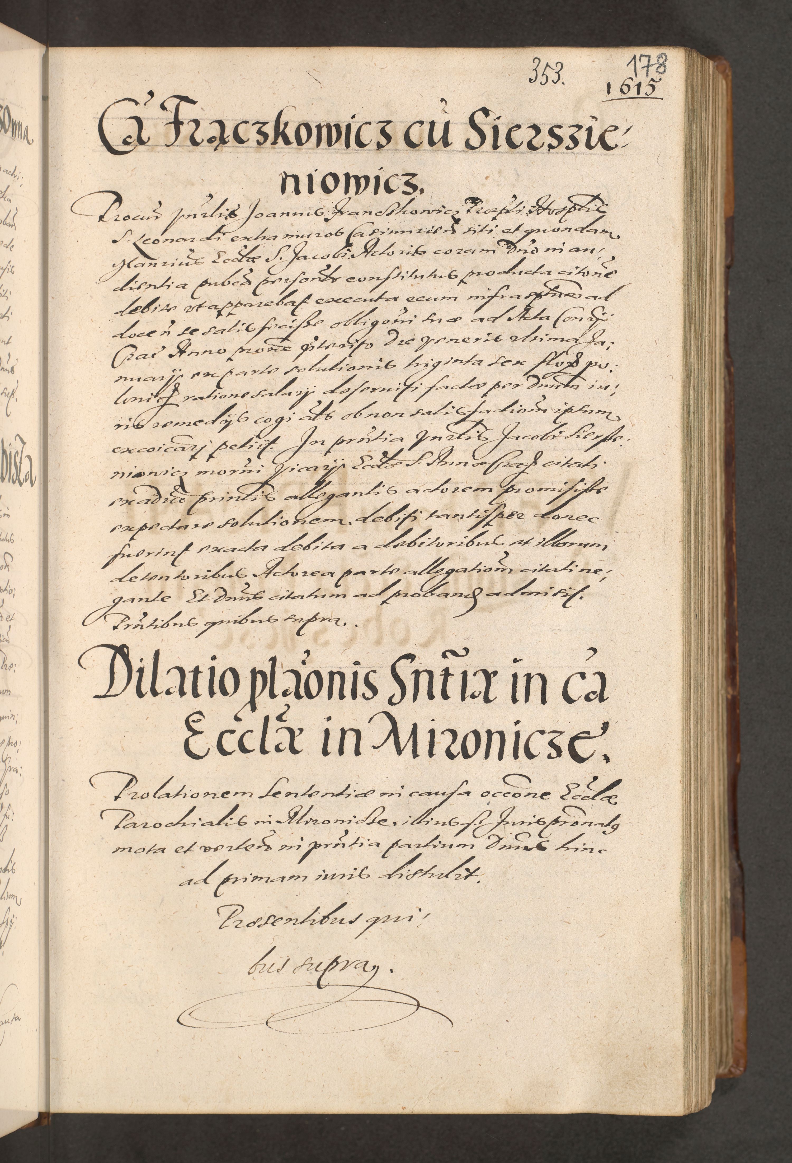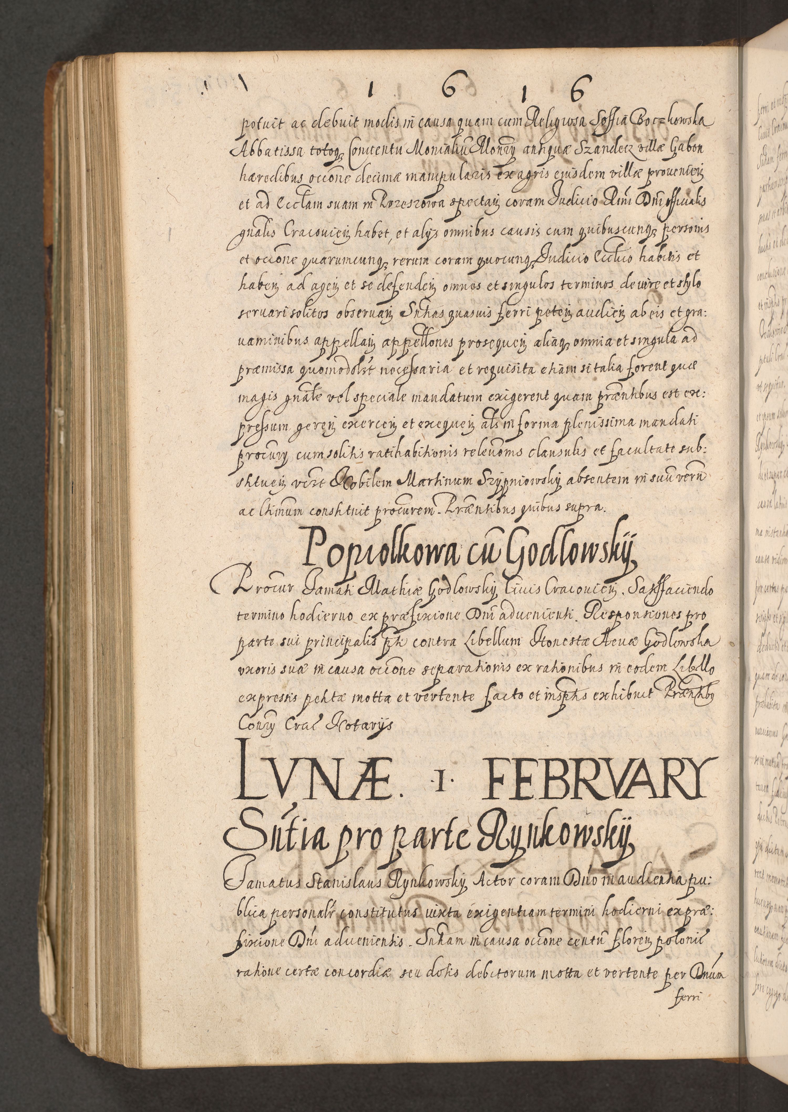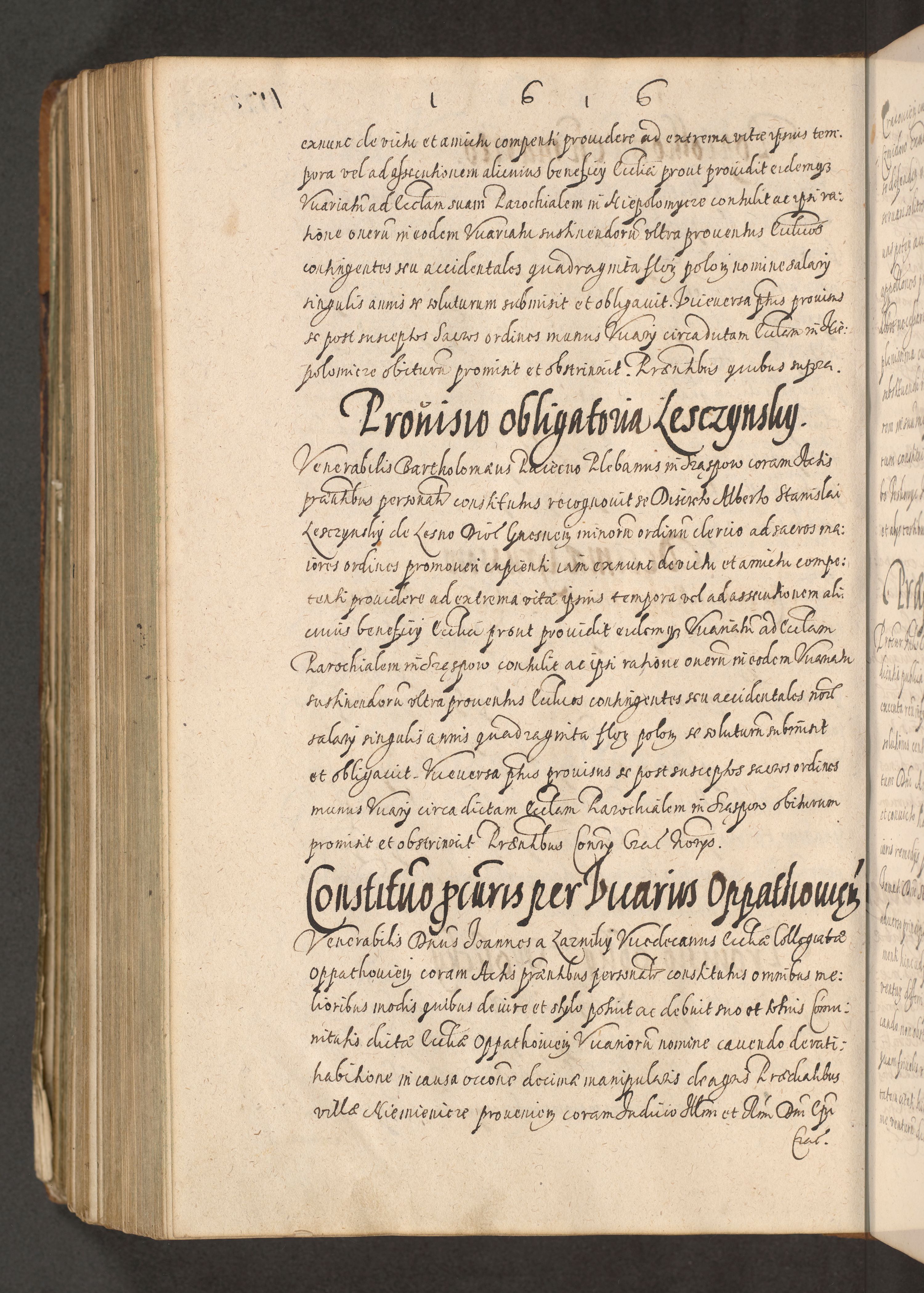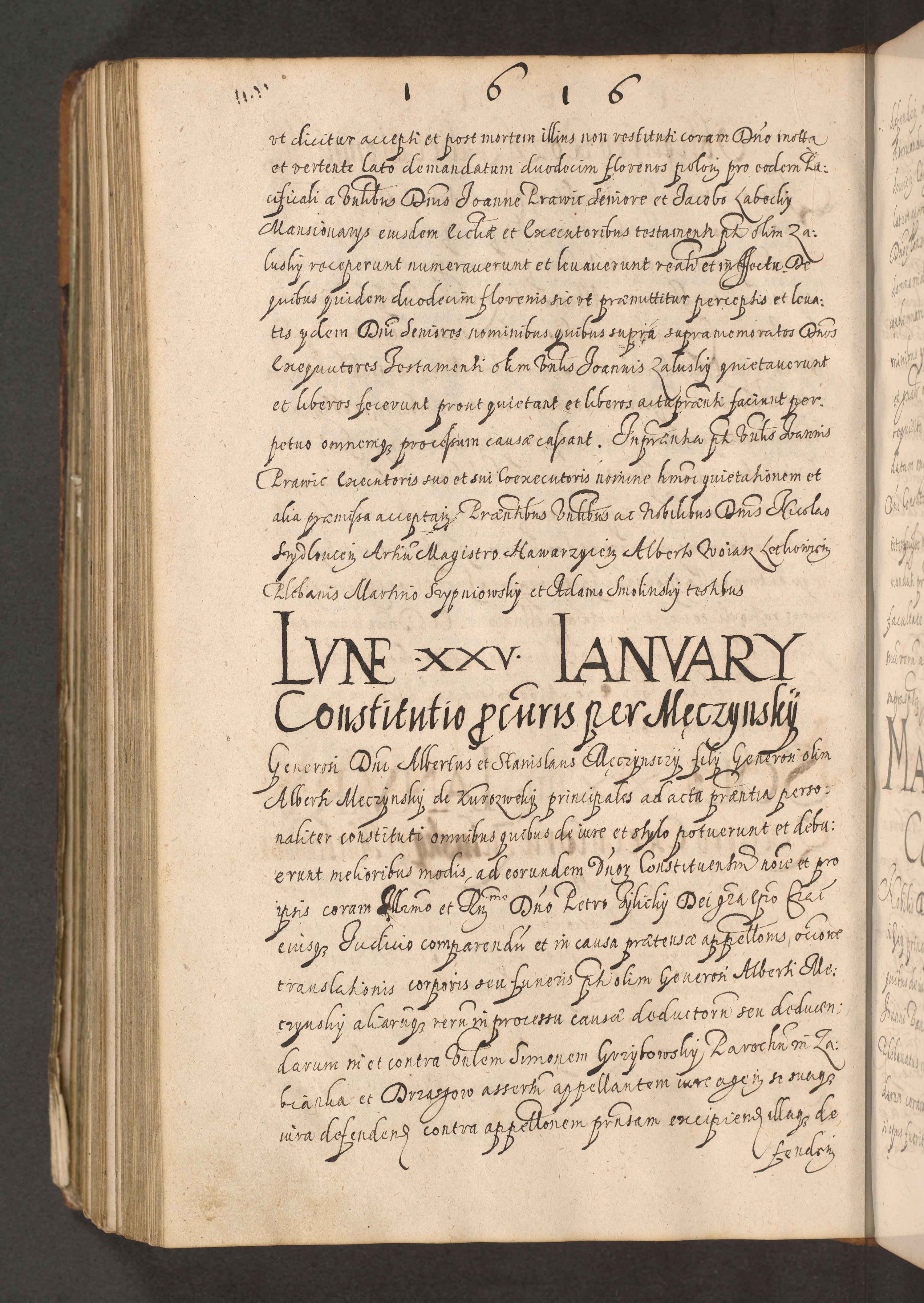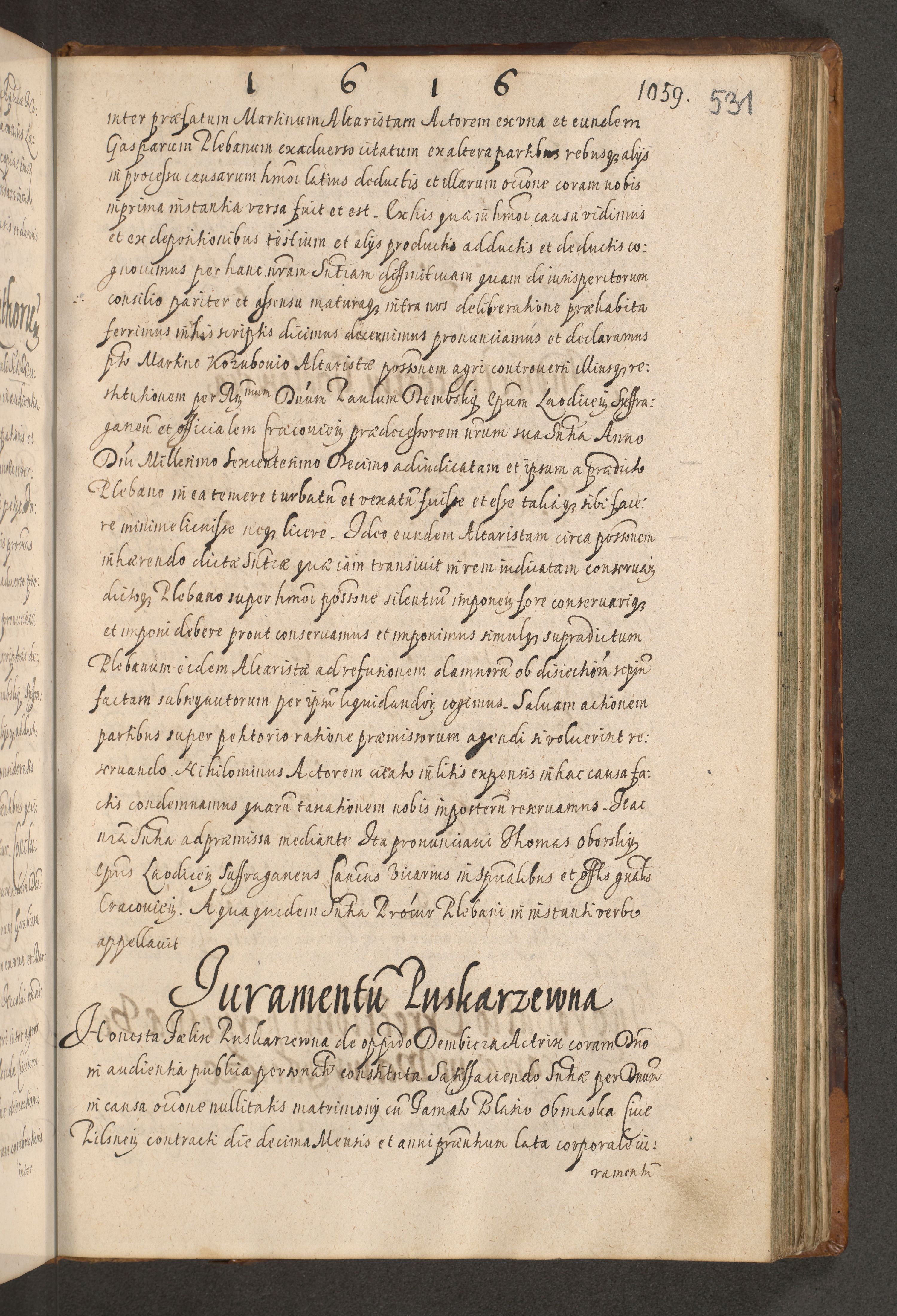 Illustrissimo et Reverendissimo in Christo Patre Domino Domino Petro Tylicki Dei et Apostolice Sedis Gratia Episcopo Cracoviensis Duce Severiensis Acta actorum causarum sententiarum tam interloquutoriarum quam definitivarum decretorum obligationum, quietationum, recognitionum, constitutionum procuratorum etc. etc. coram Admodum Reverendo Domino Thoma Oborski I. V. Doctore Canonico Vicario in Spiritualibus et Officiali generali Cracoviensis in anno Domini Millesimo Sexcentessimo Decimoquarto Cuius Indictio duodecima Pontificus SS. D. N. D. Pauli Divina providentia Papae quinti Anno decimo foeliciter incipiunt