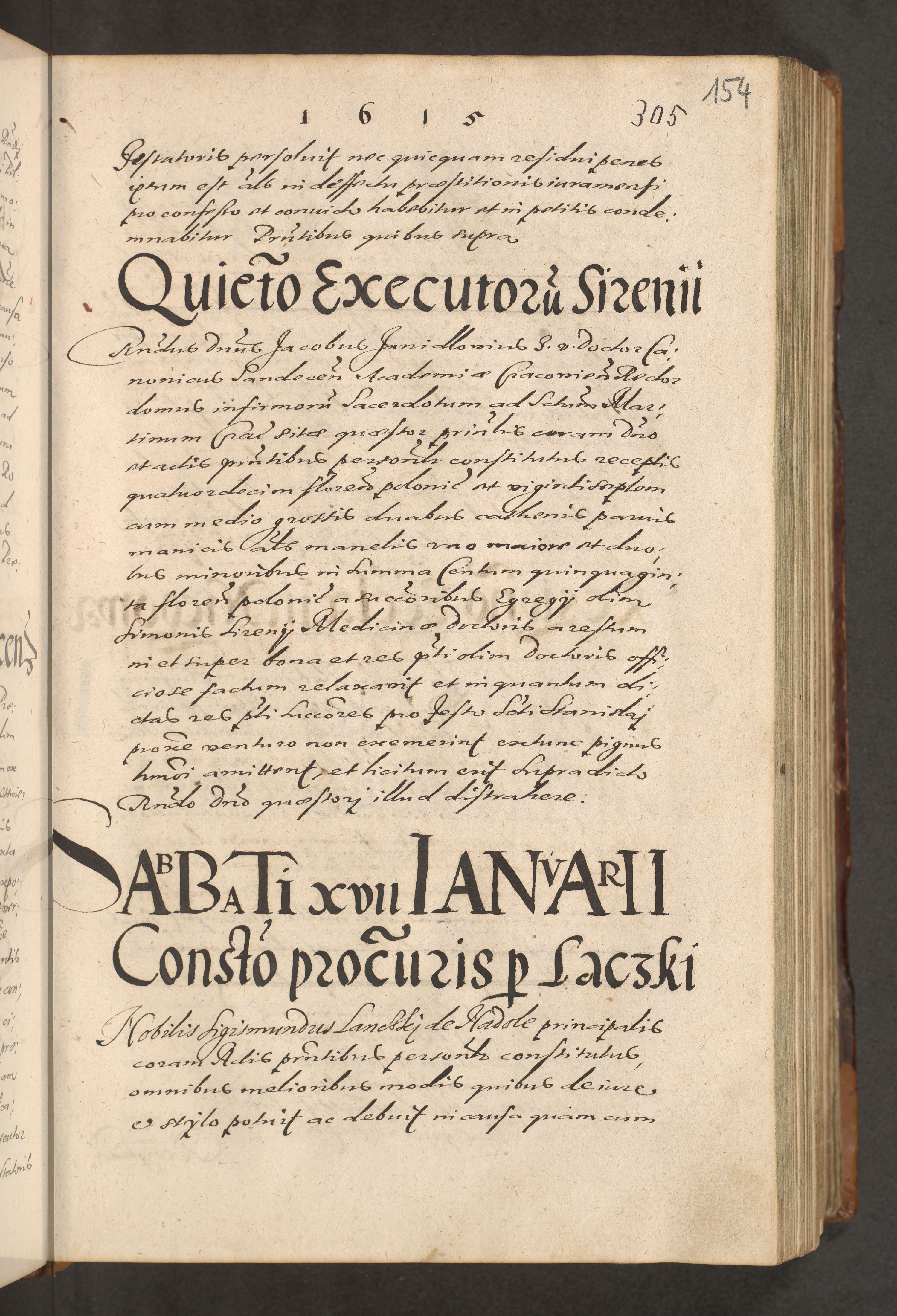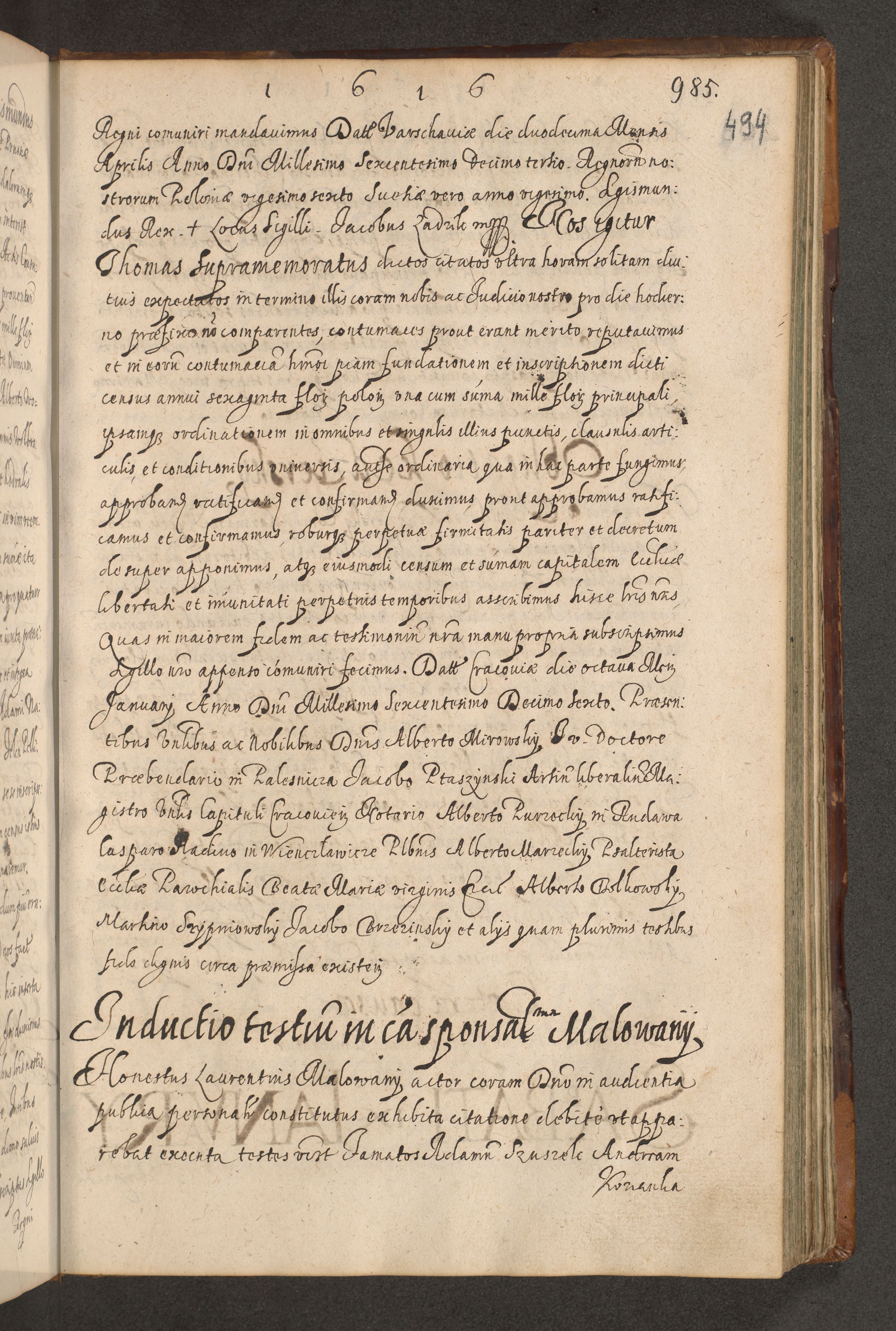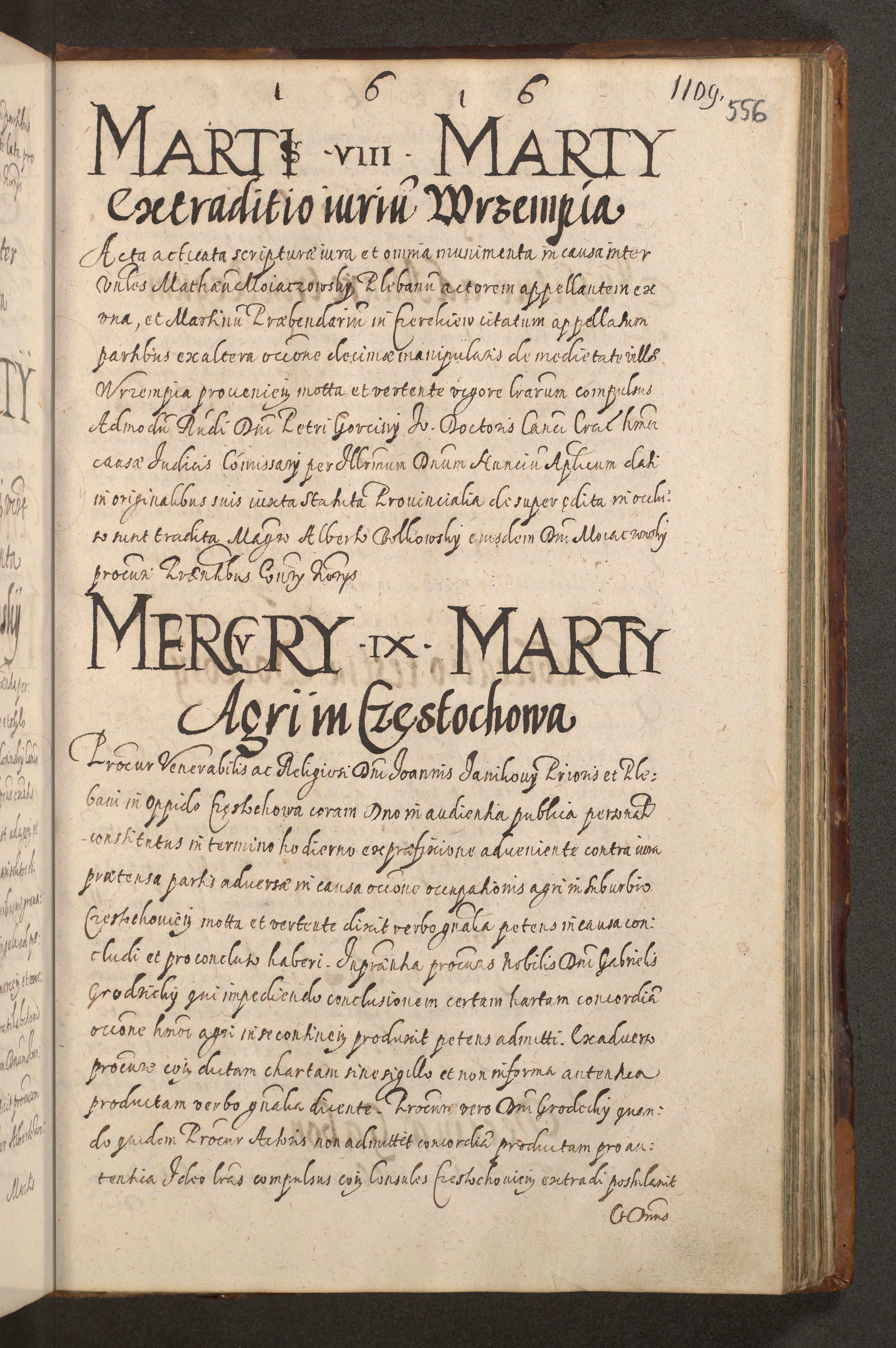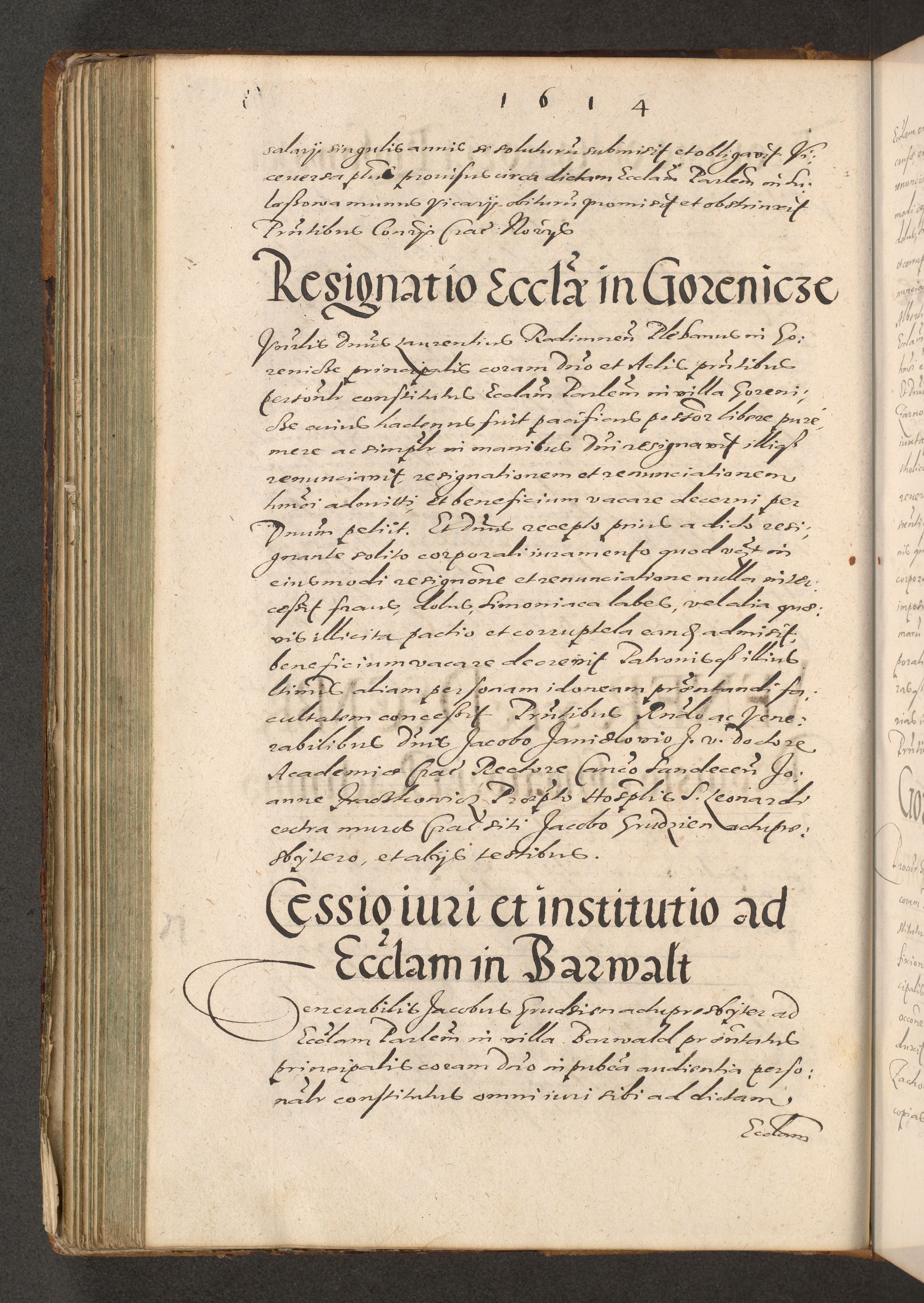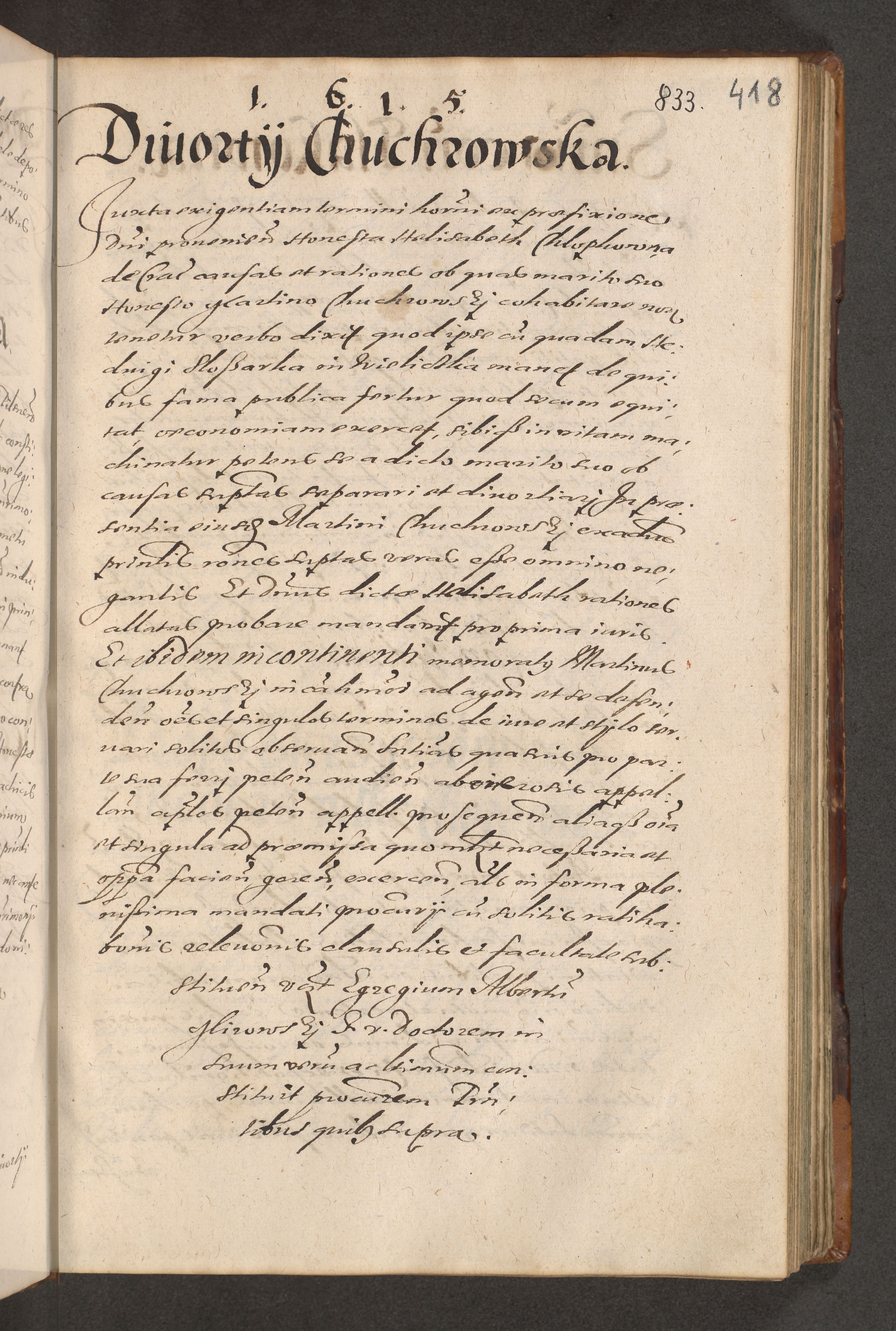 Illustrissimo et Reverendissimo in Christo Patre Domino Domino Petro Tylicki Dei et Apostolice Sedis Gratia Episcopo Cracoviensis Duce Severiensis Acta actorum causarum sententiarum tam interloquutoriarum quam definitivarum decretorum obligationum, quietationum, recognitionum, constitutionum procuratorum etc. etc. coram Admodum Reverendo Domino Thoma Oborski I. V. Doctore Canonico Vicario in Spiritualibus et Officiali generali Cracoviensis in anno Domini Millesimo Sexcentessimo Decimoquarto Cuius Indictio duodecima Pontificus SS. D. N. D. Pauli Divina providentia Papae quinti Anno decimo foeliciter incipiunt