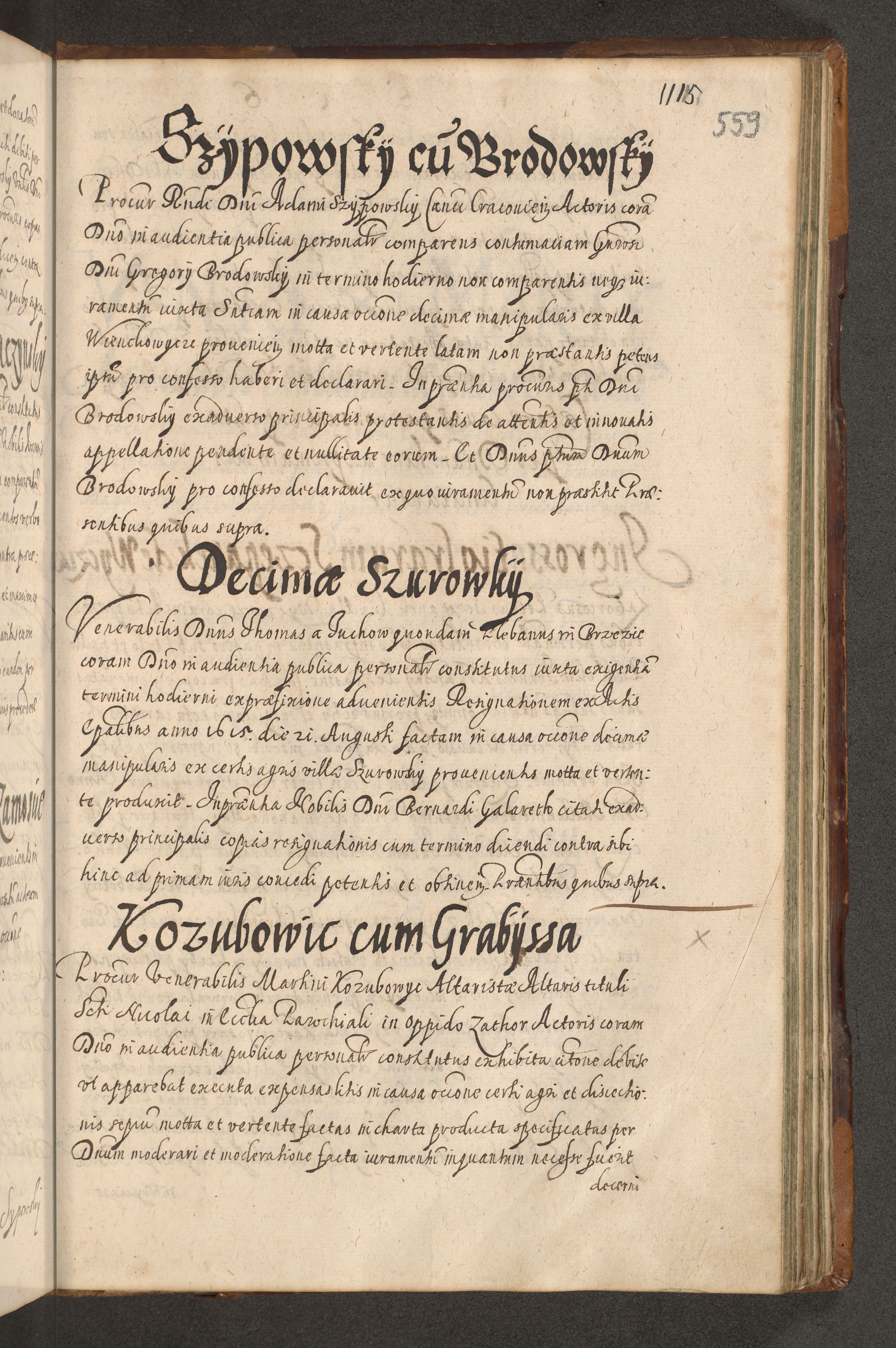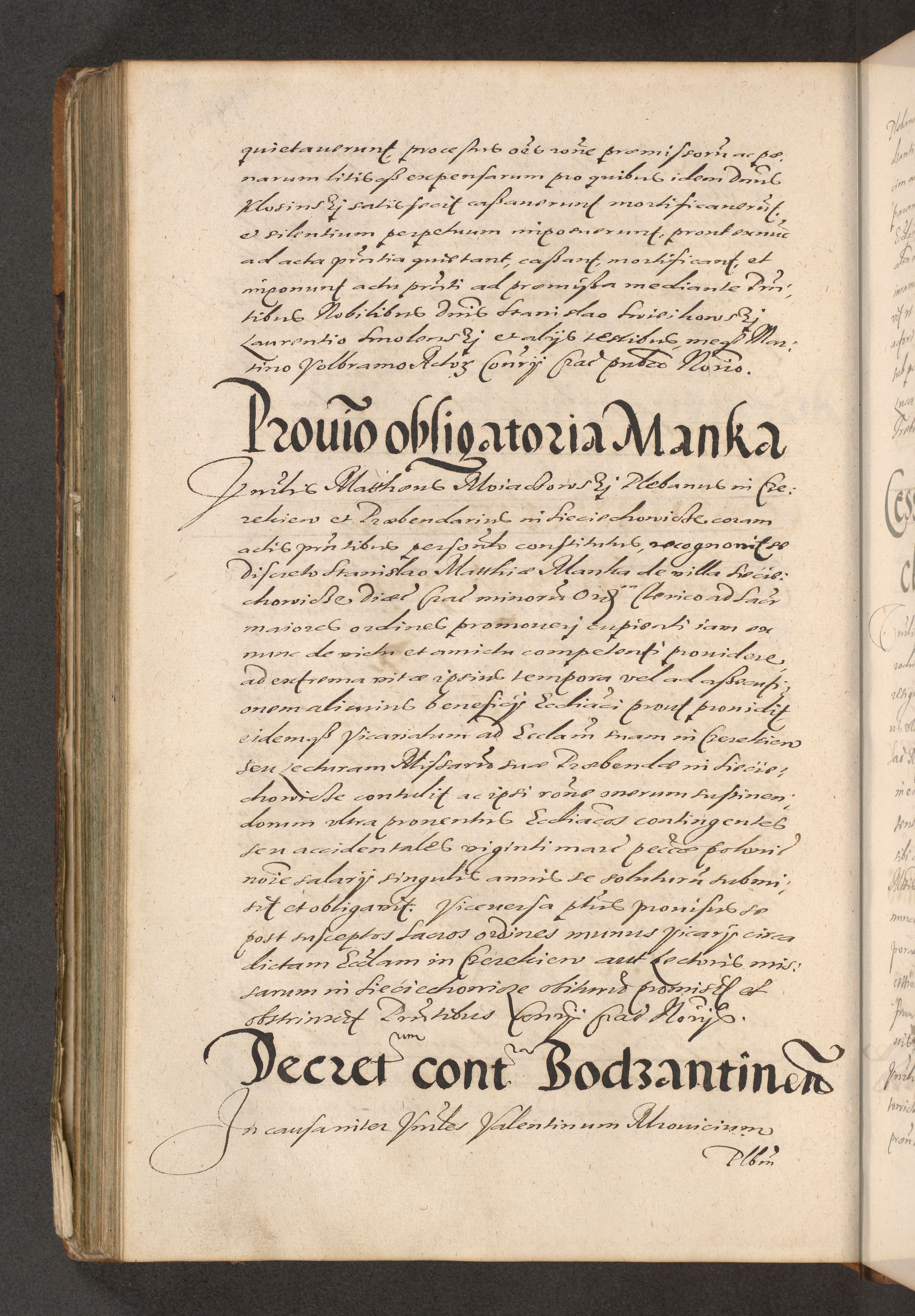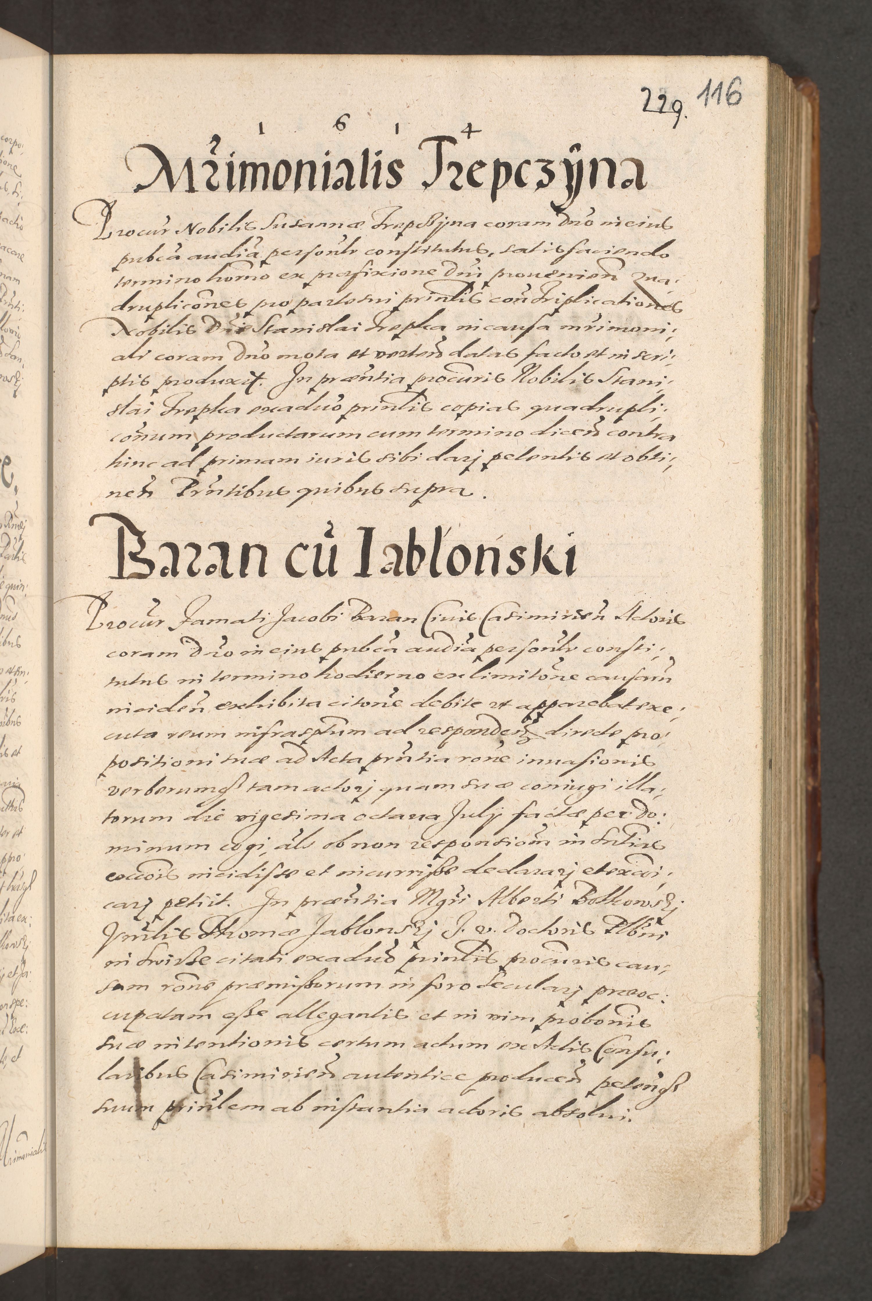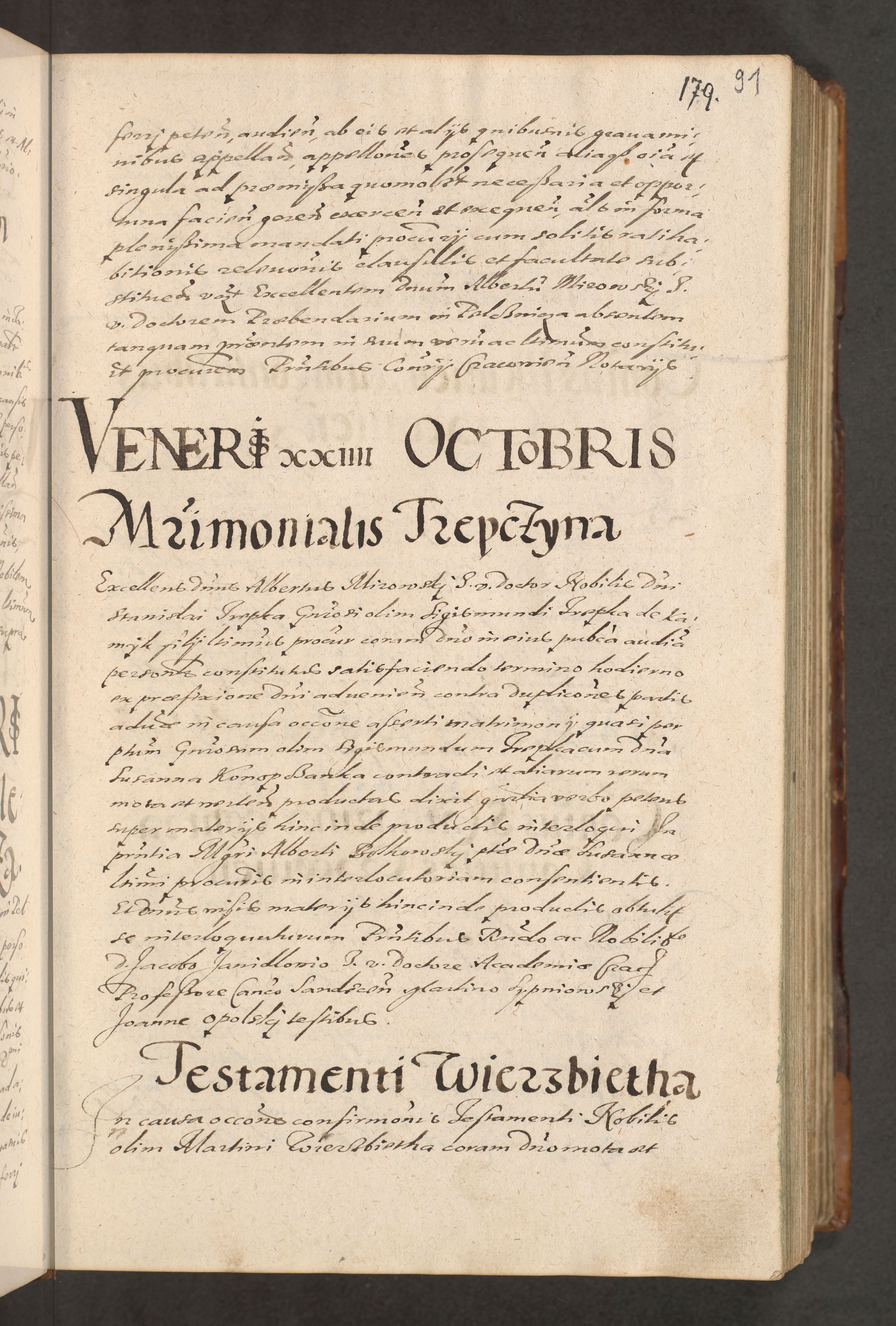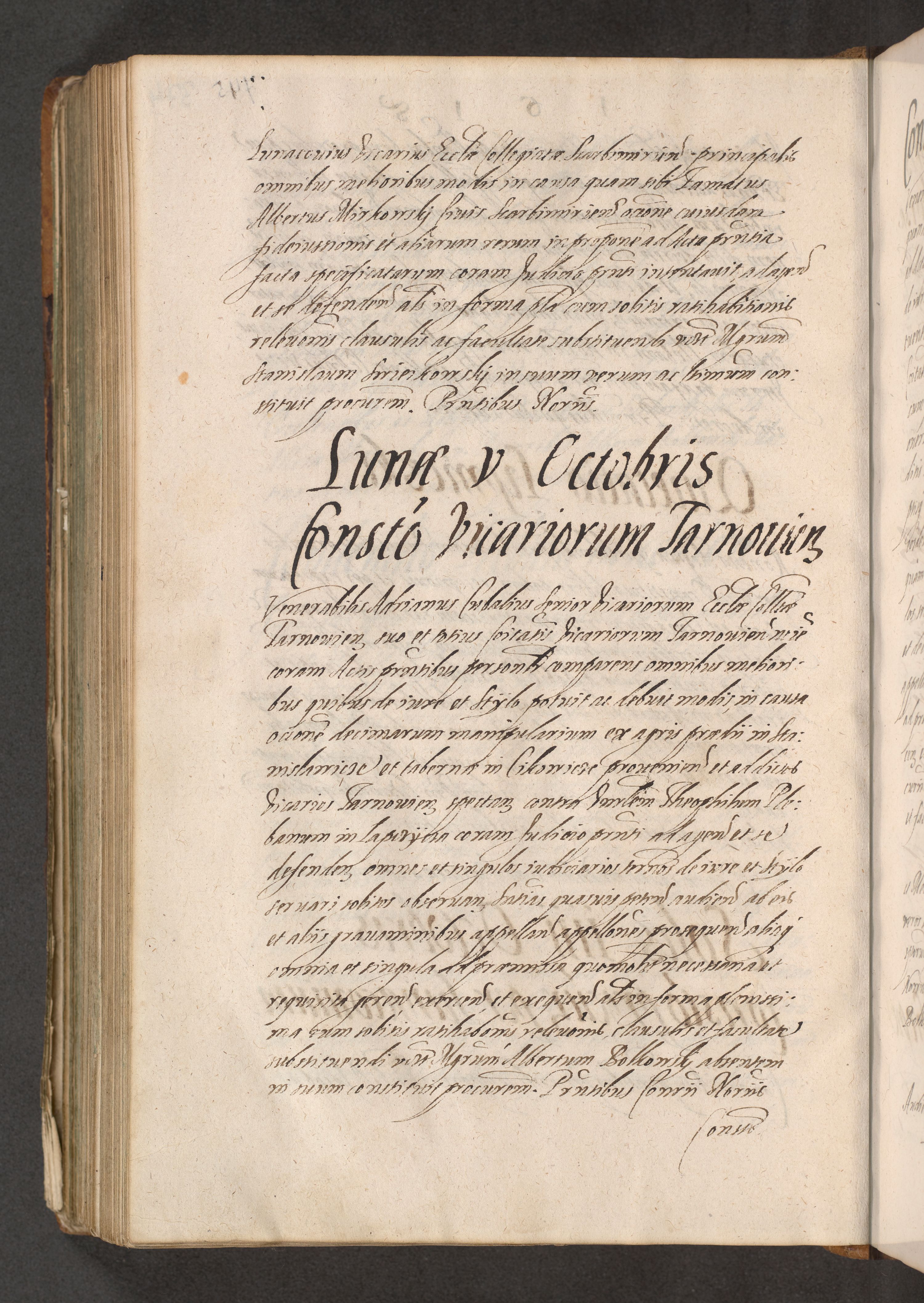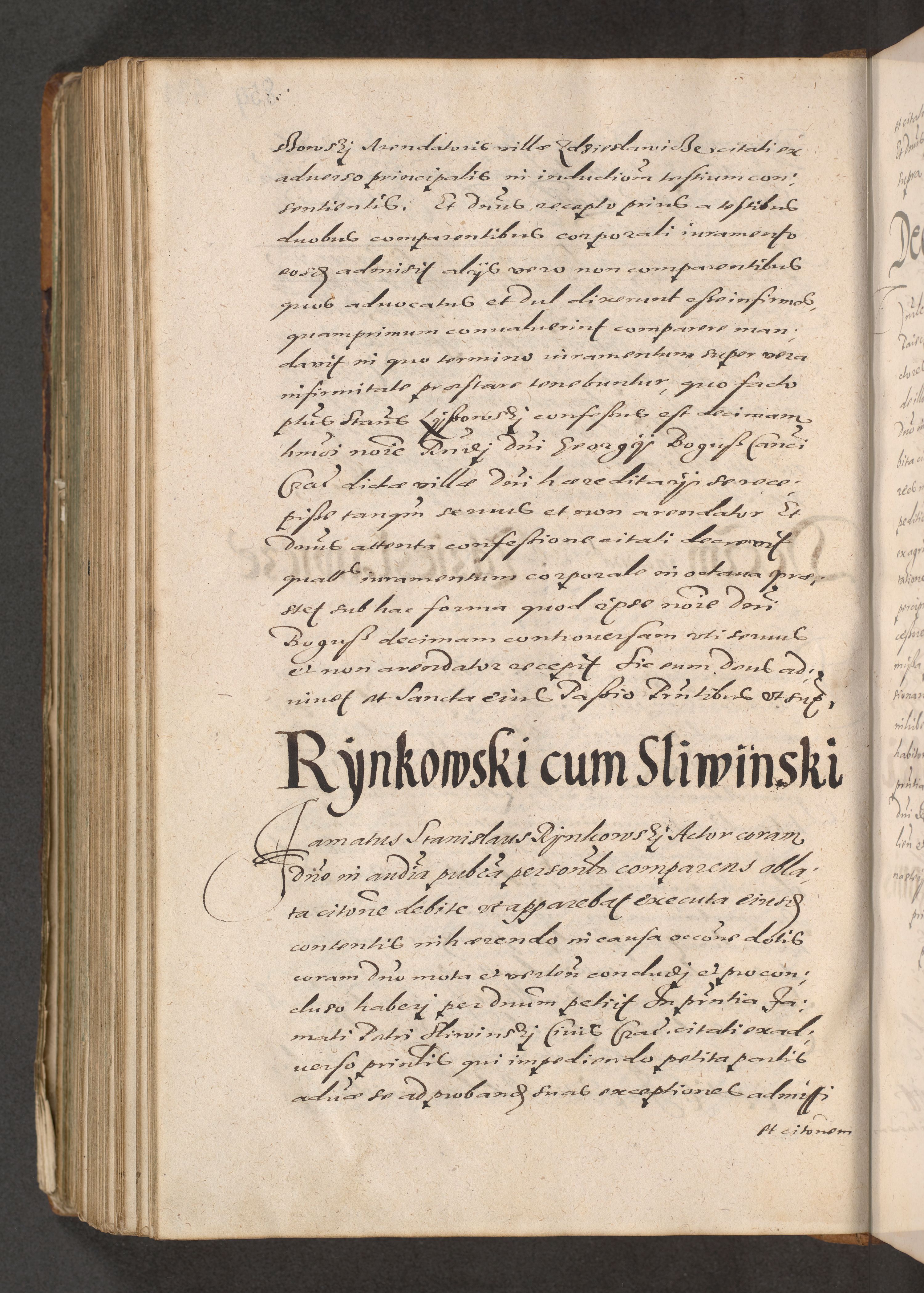 Illustrissimo et Reverendissimo in Christo Patre Domino Domino Petro Tylicki Dei et Apostolice Sedis Gratia Episcopo Cracoviensis Duce Severiensis Acta actorum causarum sententiarum tam interloquutoriarum quam definitivarum decretorum obligationum, quietationum, recognitionum, constitutionum procuratorum etc. etc. coram Admodum Reverendo Domino Thoma Oborski I. V. Doctore Canonico Vicario in Spiritualibus et Officiali generali Cracoviensis in anno Domini Millesimo Sexcentessimo Decimoquarto Cuius Indictio duodecima Pontificus SS. D. N. D. Pauli Divina providentia Papae quinti Anno decimo foeliciter incipiunt