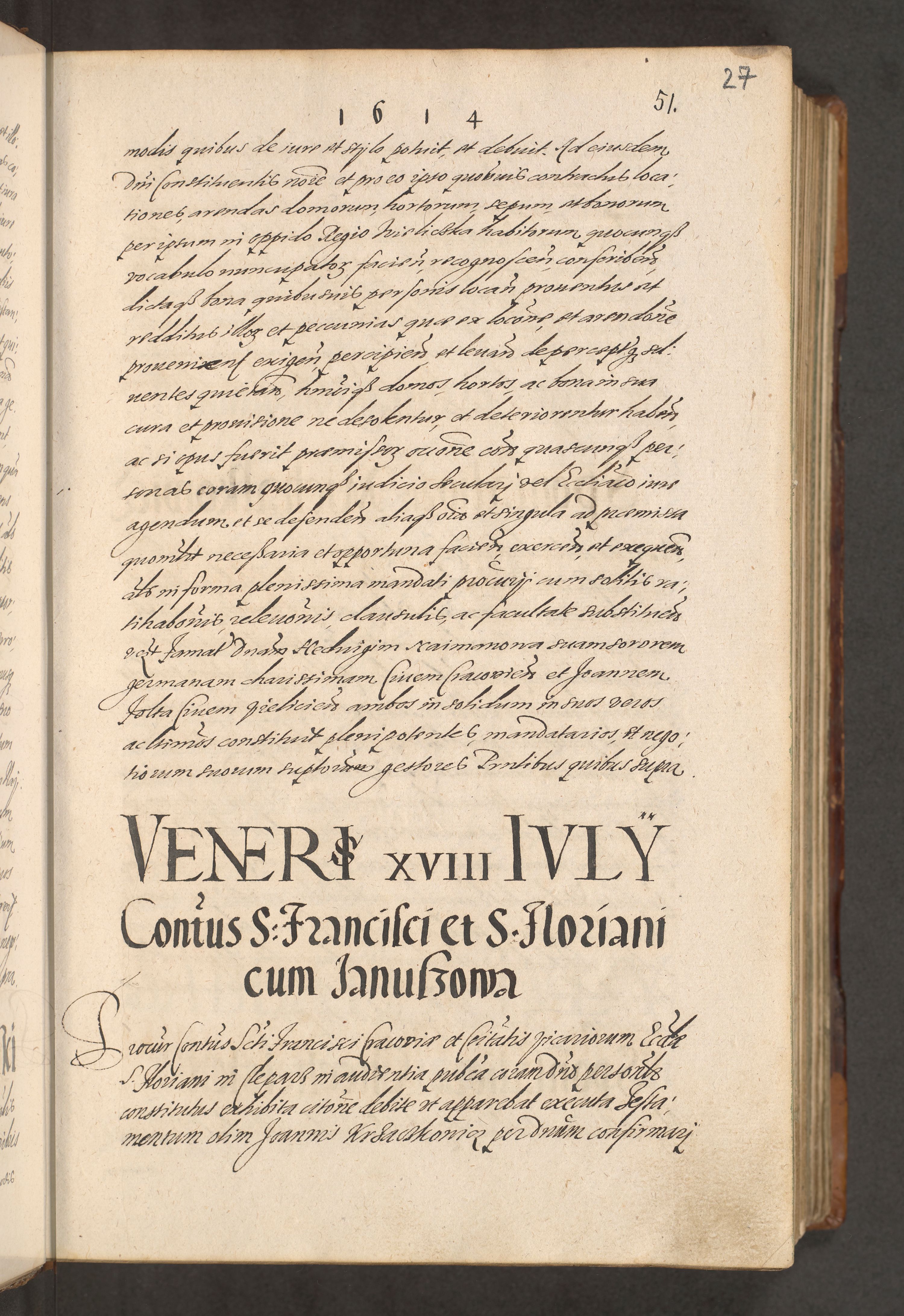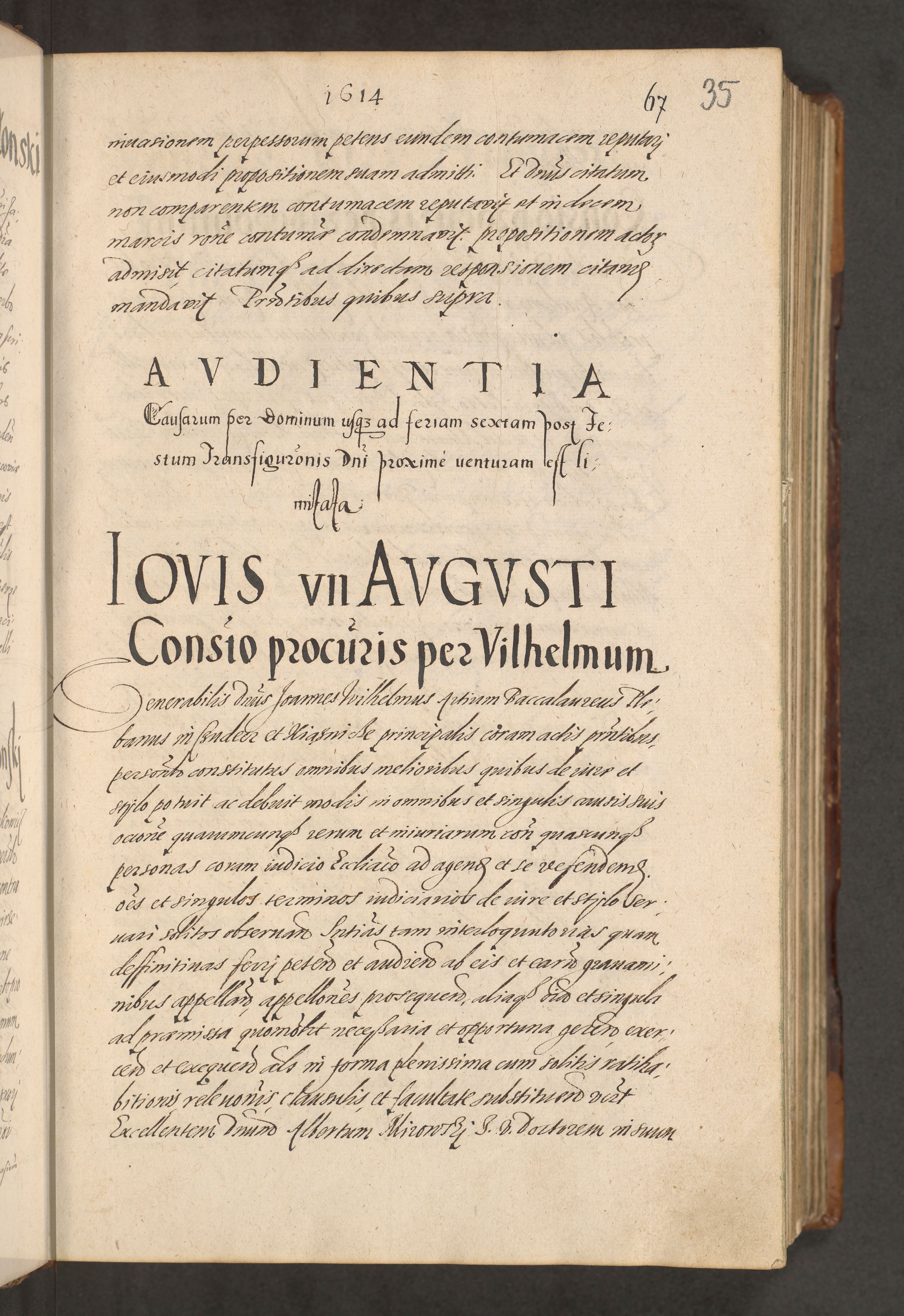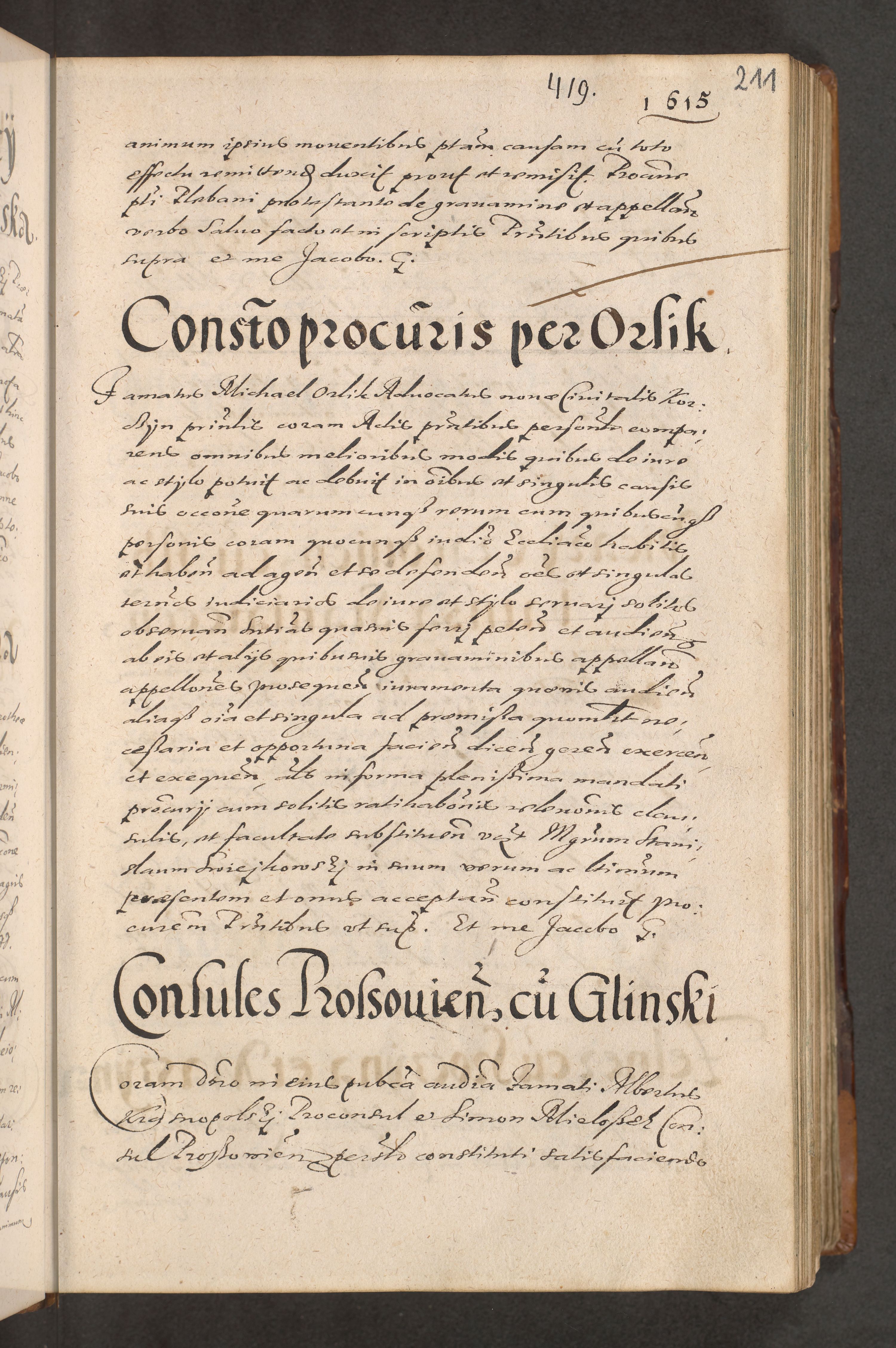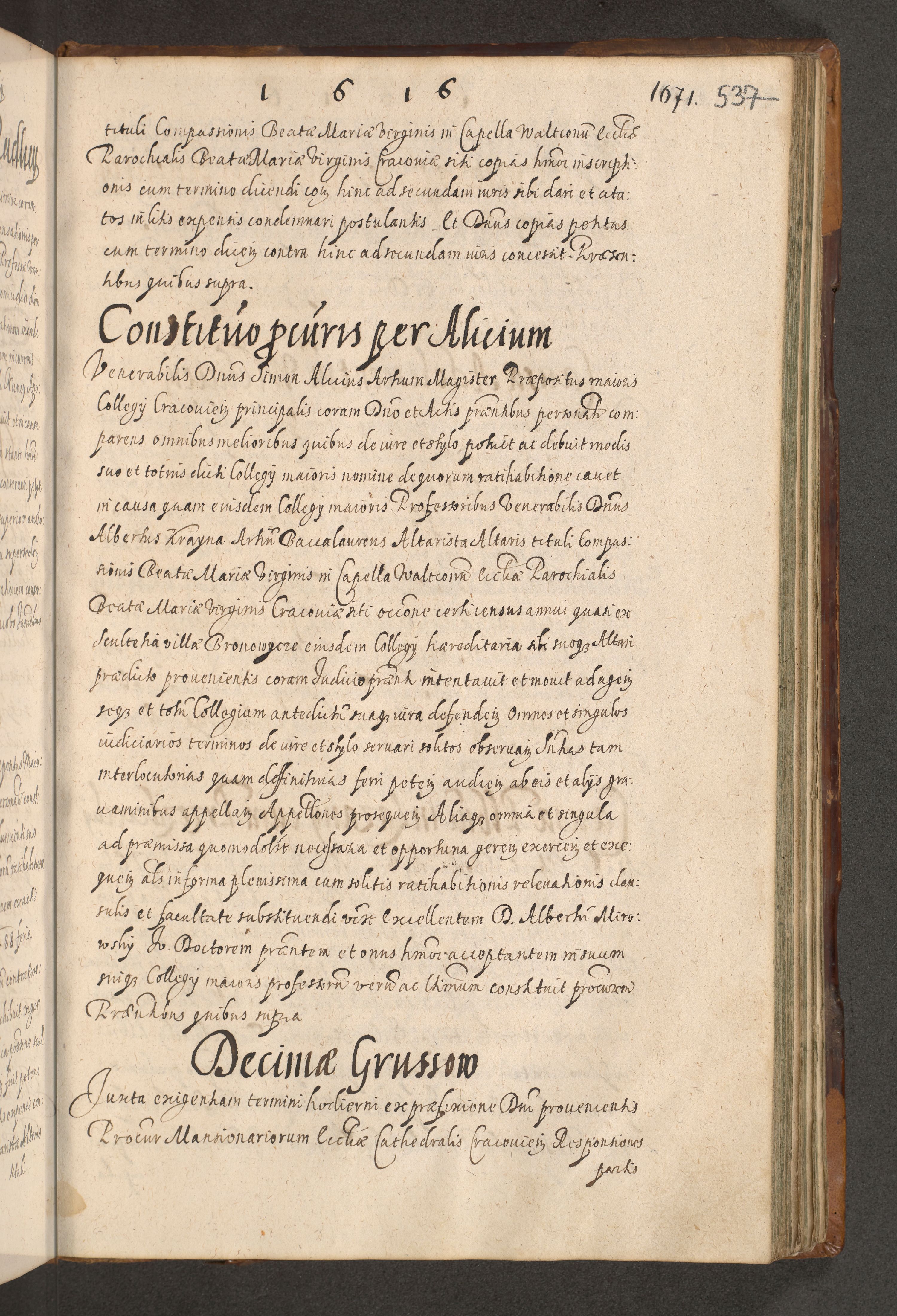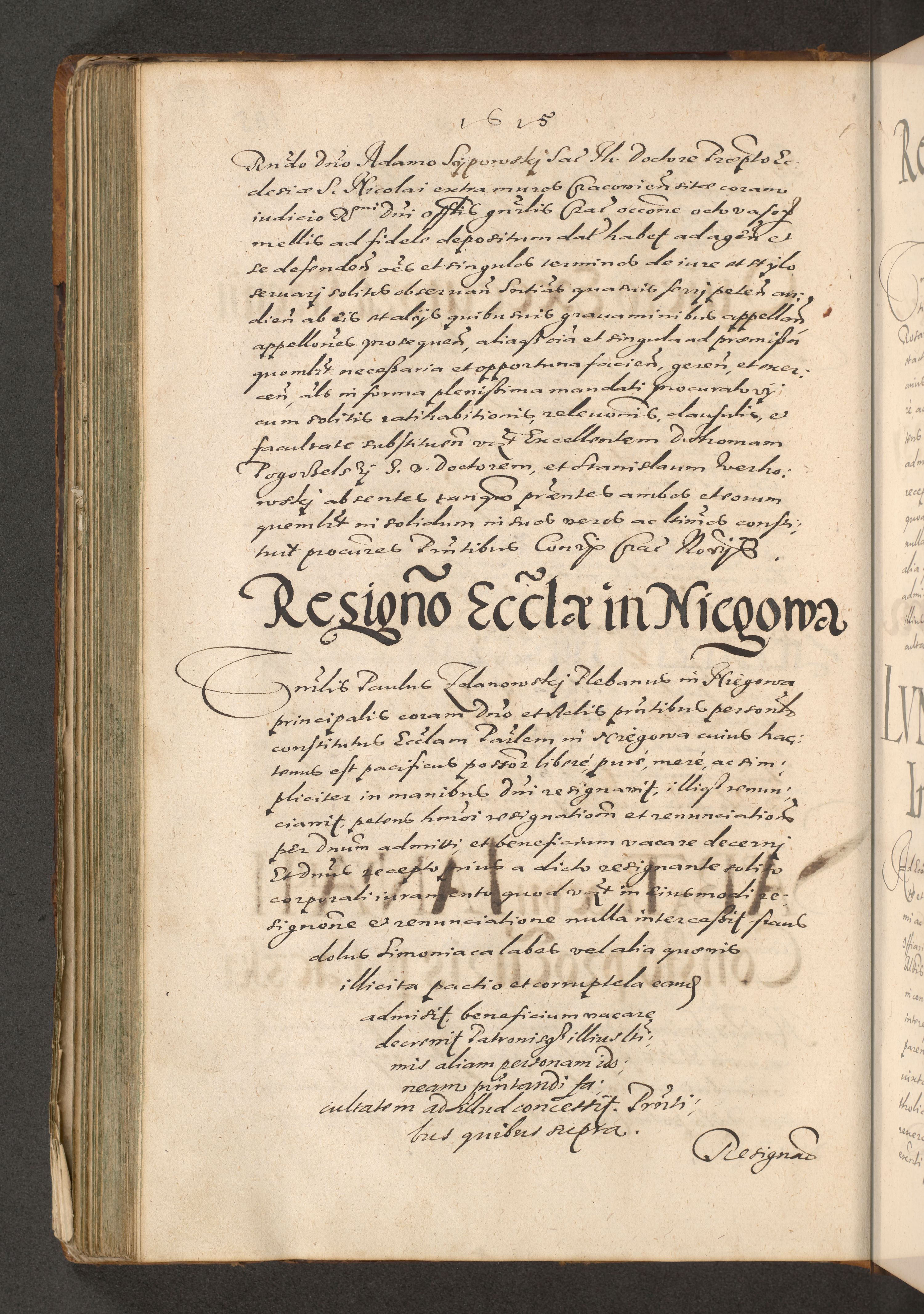 Illustrissimo et Reverendissimo in Christo Patre Domino Domino Petro Tylicki Dei et Apostolice Sedis Gratia Episcopo Cracoviensis Duce Severiensis Acta actorum causarum sententiarum tam interloquutoriarum quam definitivarum decretorum obligationum, quietationum, recognitionum, constitutionum procuratorum etc. etc. coram Admodum Reverendo Domino Thoma Oborski I. V. Doctore Canonico Vicario in Spiritualibus et Officiali generali Cracoviensis in anno Domini Millesimo Sexcentessimo Decimoquarto Cuius Indictio duodecima Pontificus SS. D. N. D. Pauli Divina providentia Papae quinti Anno decimo foeliciter incipiunt
