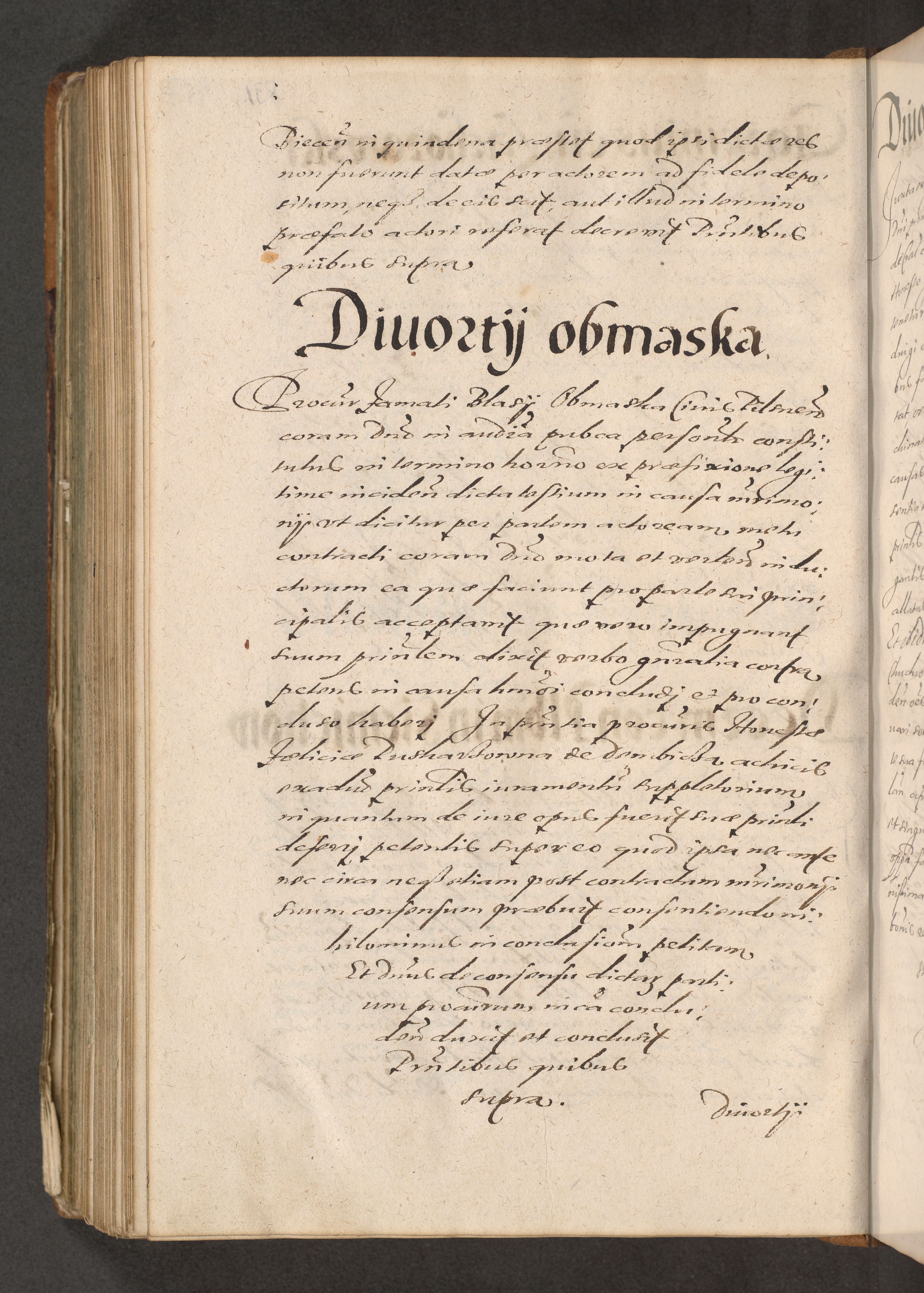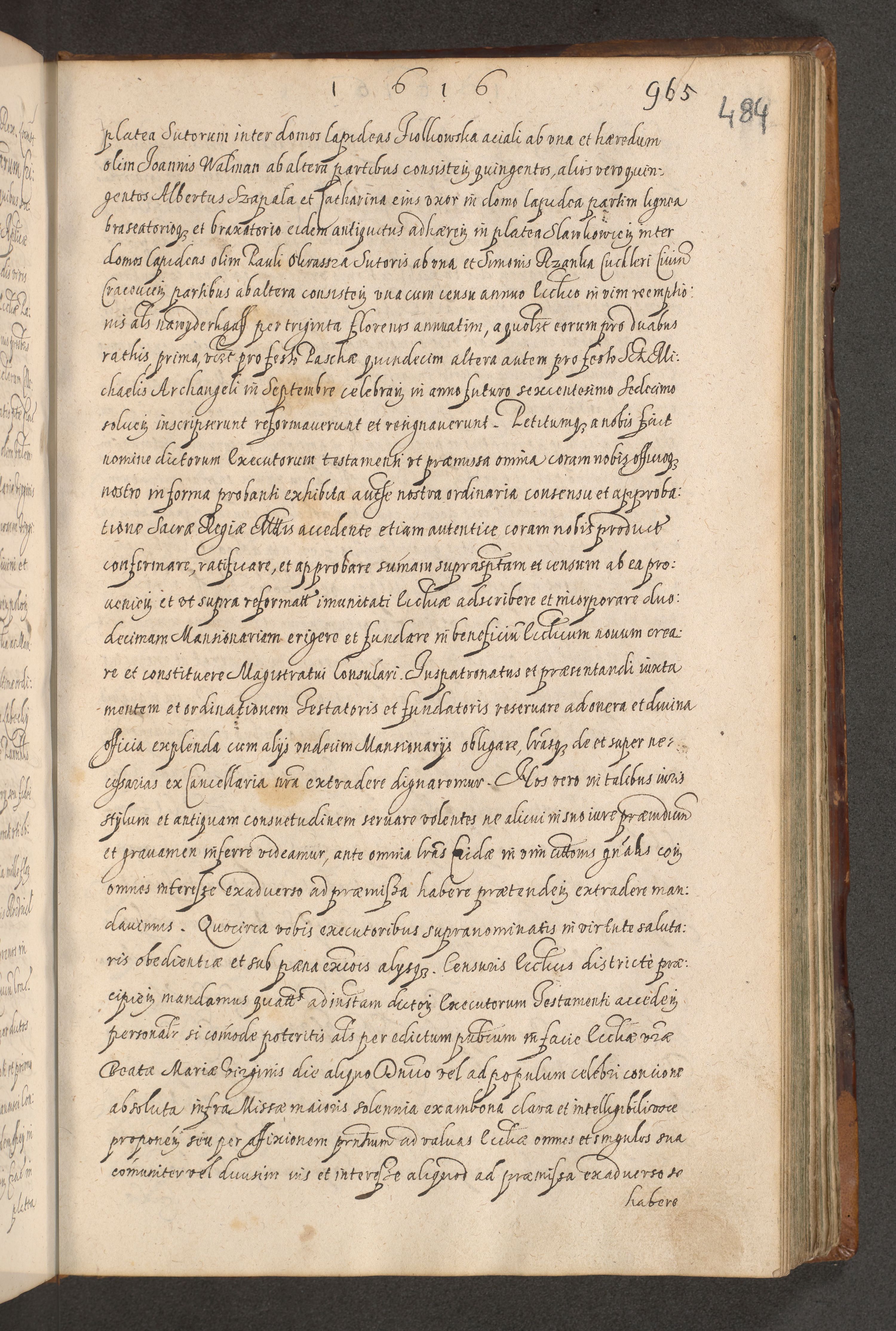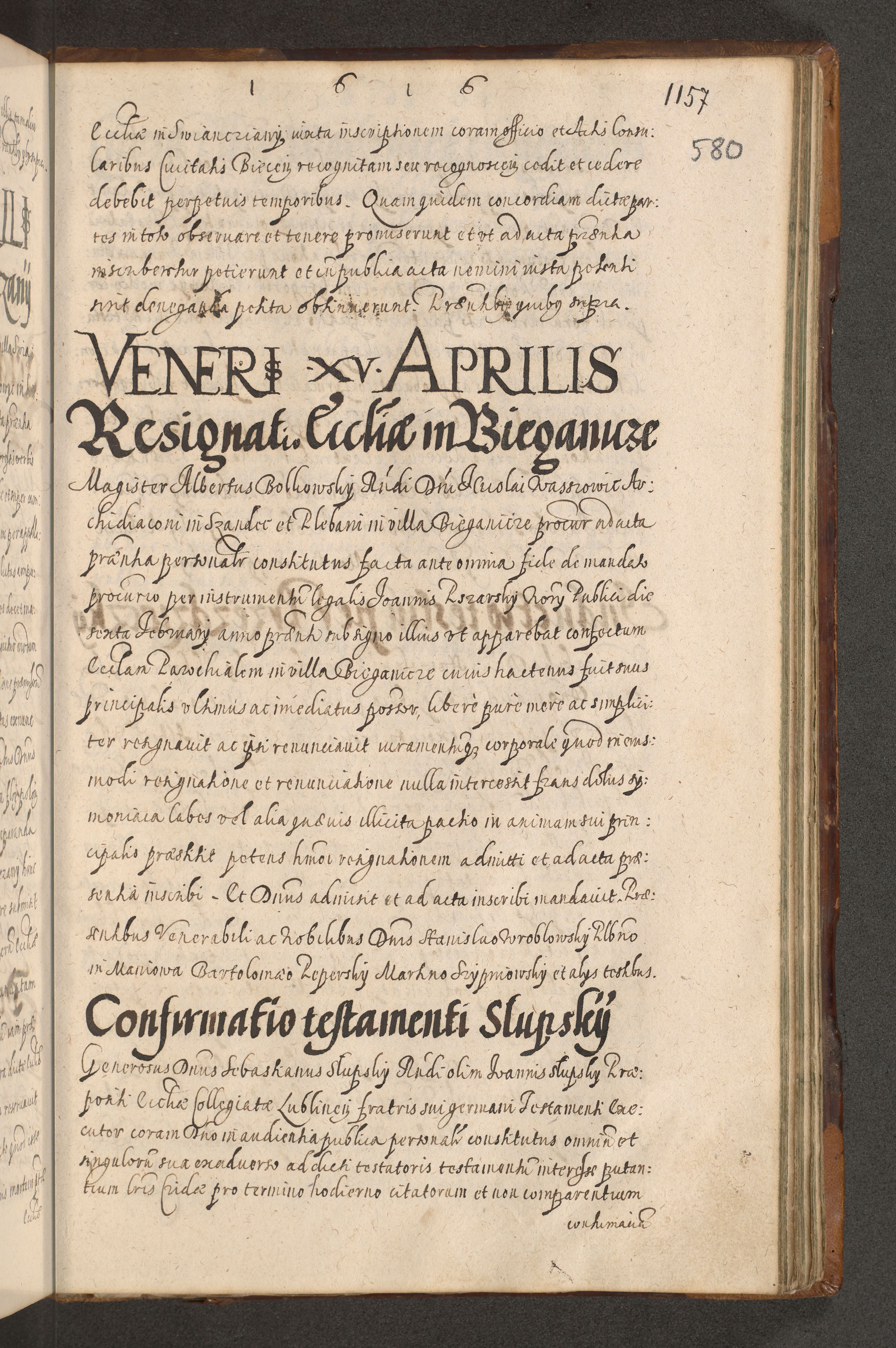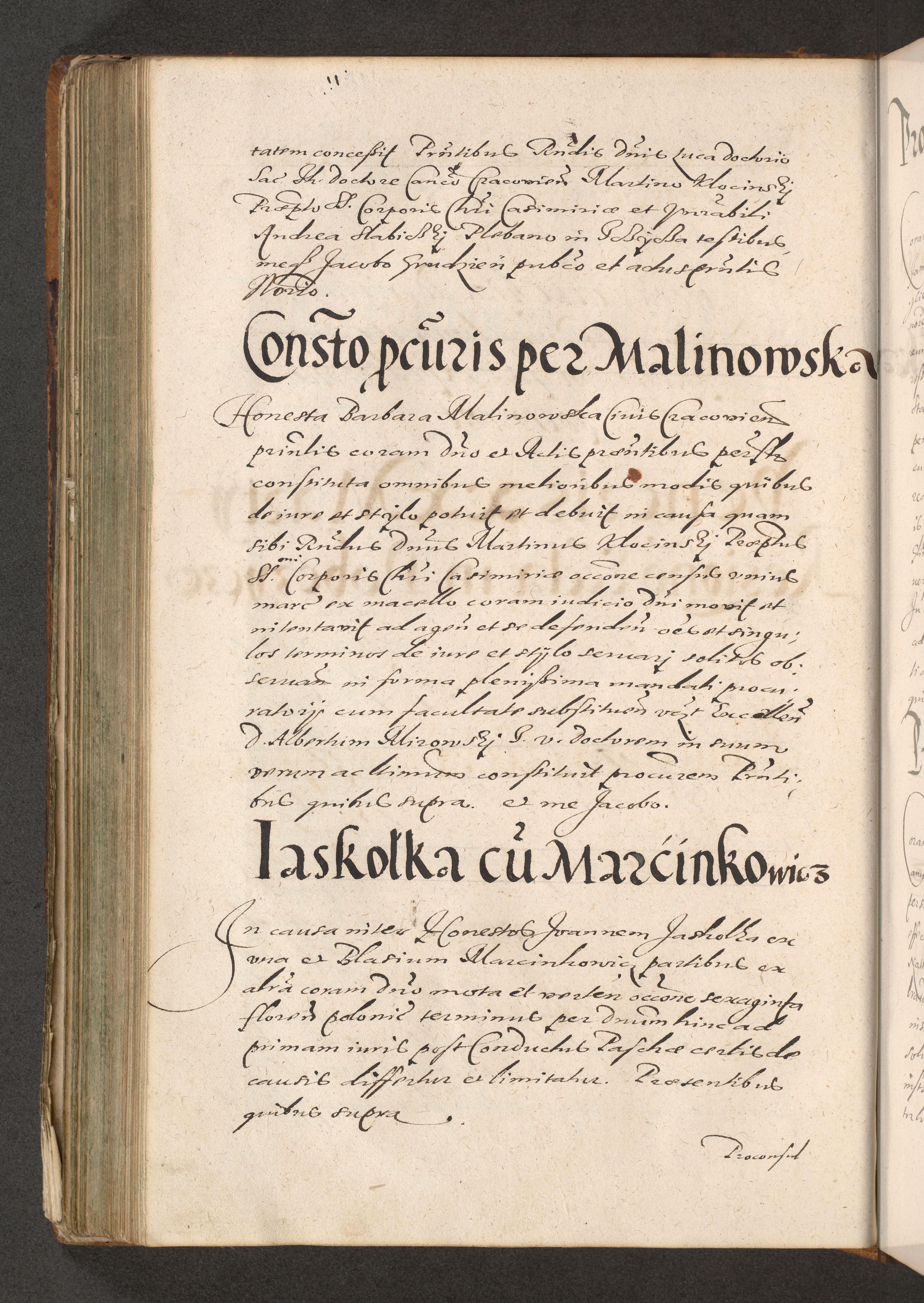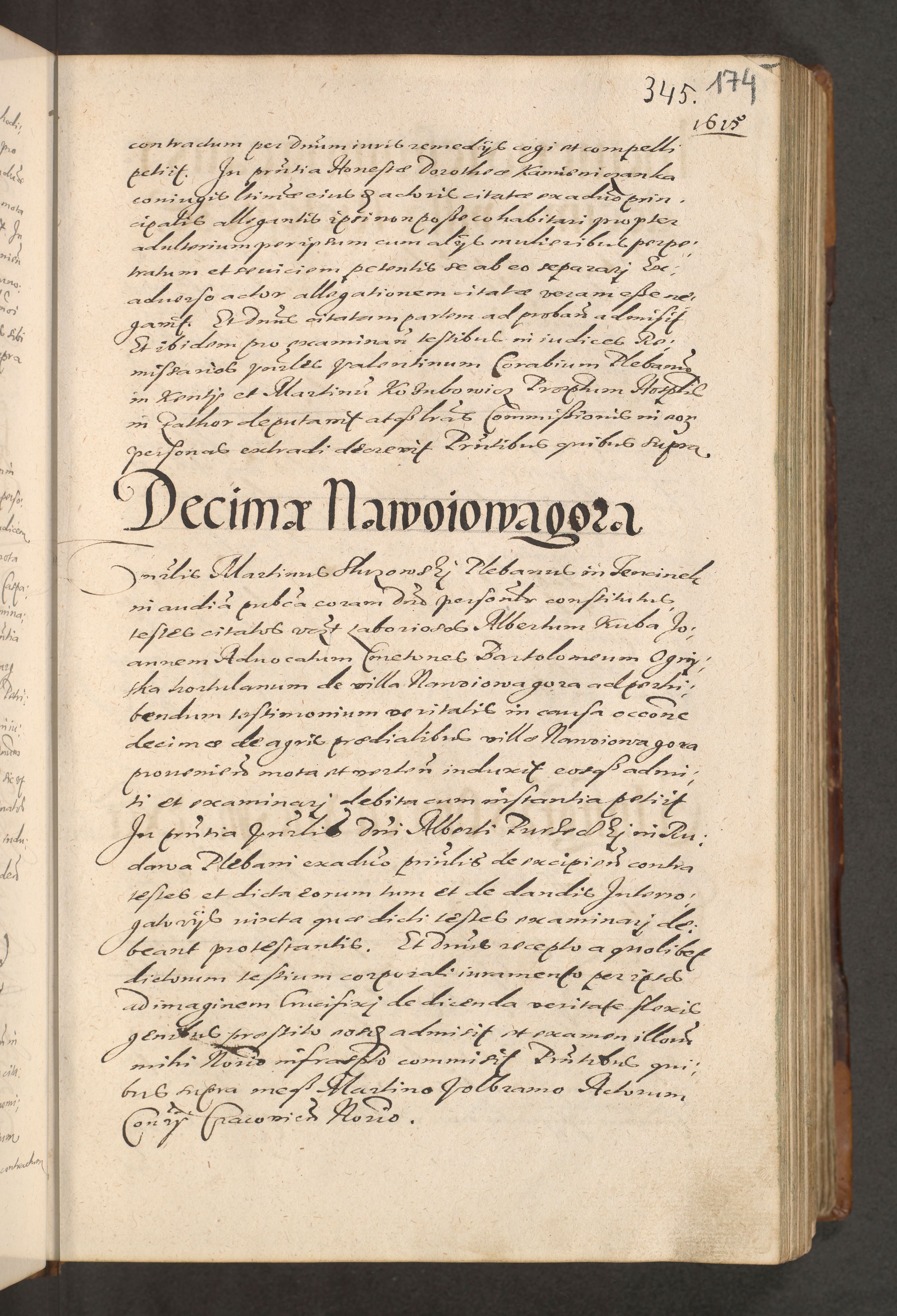 Illustrissimo et Reverendissimo in Christo Patre Domino Domino Petro Tylicki Dei et Apostolice Sedis Gratia Episcopo Cracoviensis Duce Severiensis Acta actorum causarum sententiarum tam interloquutoriarum quam definitivarum decretorum obligationum, quietationum, recognitionum, constitutionum procuratorum etc. etc. coram Admodum Reverendo Domino Thoma Oborski I. V. Doctore Canonico Vicario in Spiritualibus et Officiali generali Cracoviensis in anno Domini Millesimo Sexcentessimo Decimoquarto Cuius Indictio duodecima Pontificus SS. D. N. D. Pauli Divina providentia Papae quinti Anno decimo foeliciter incipiunt