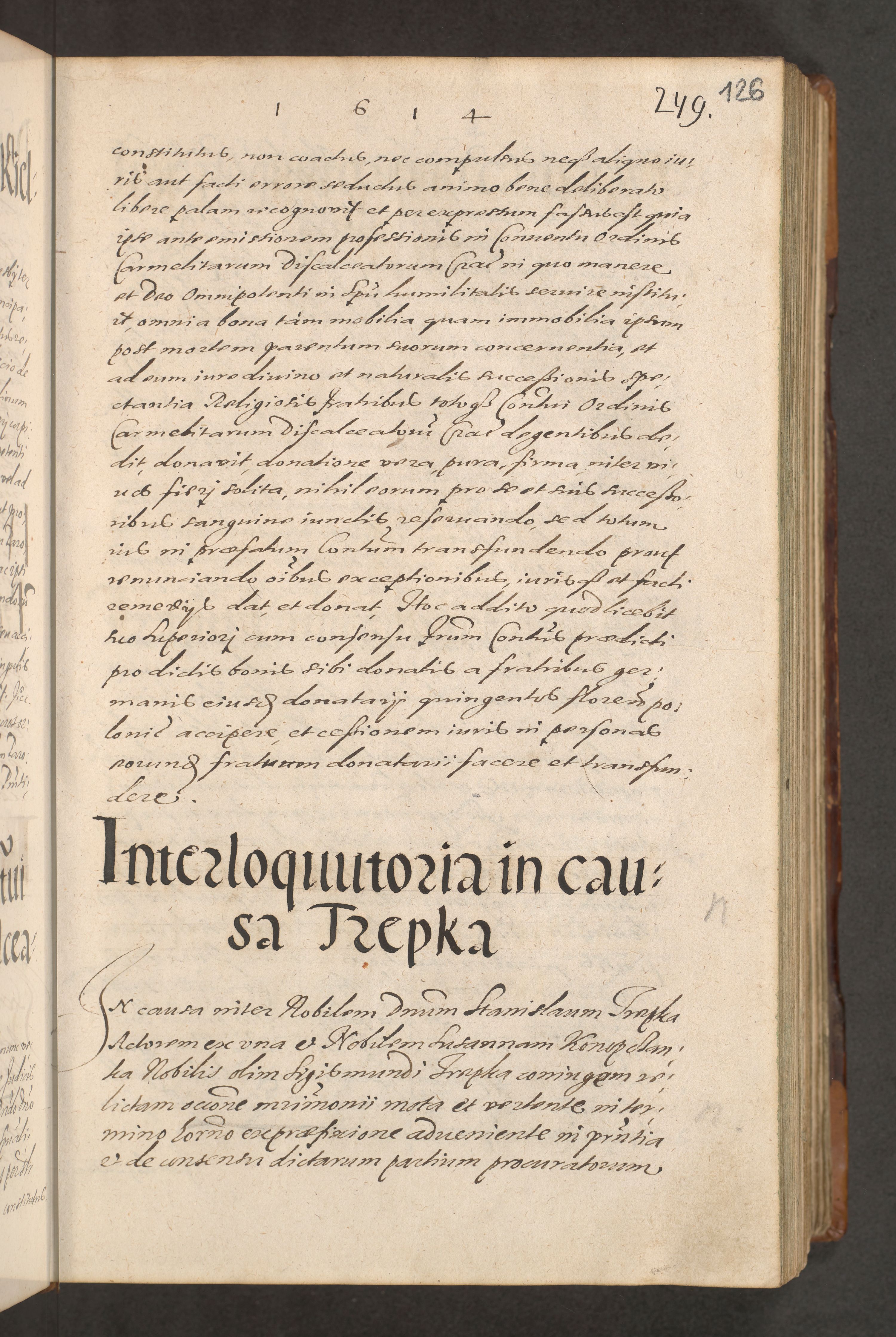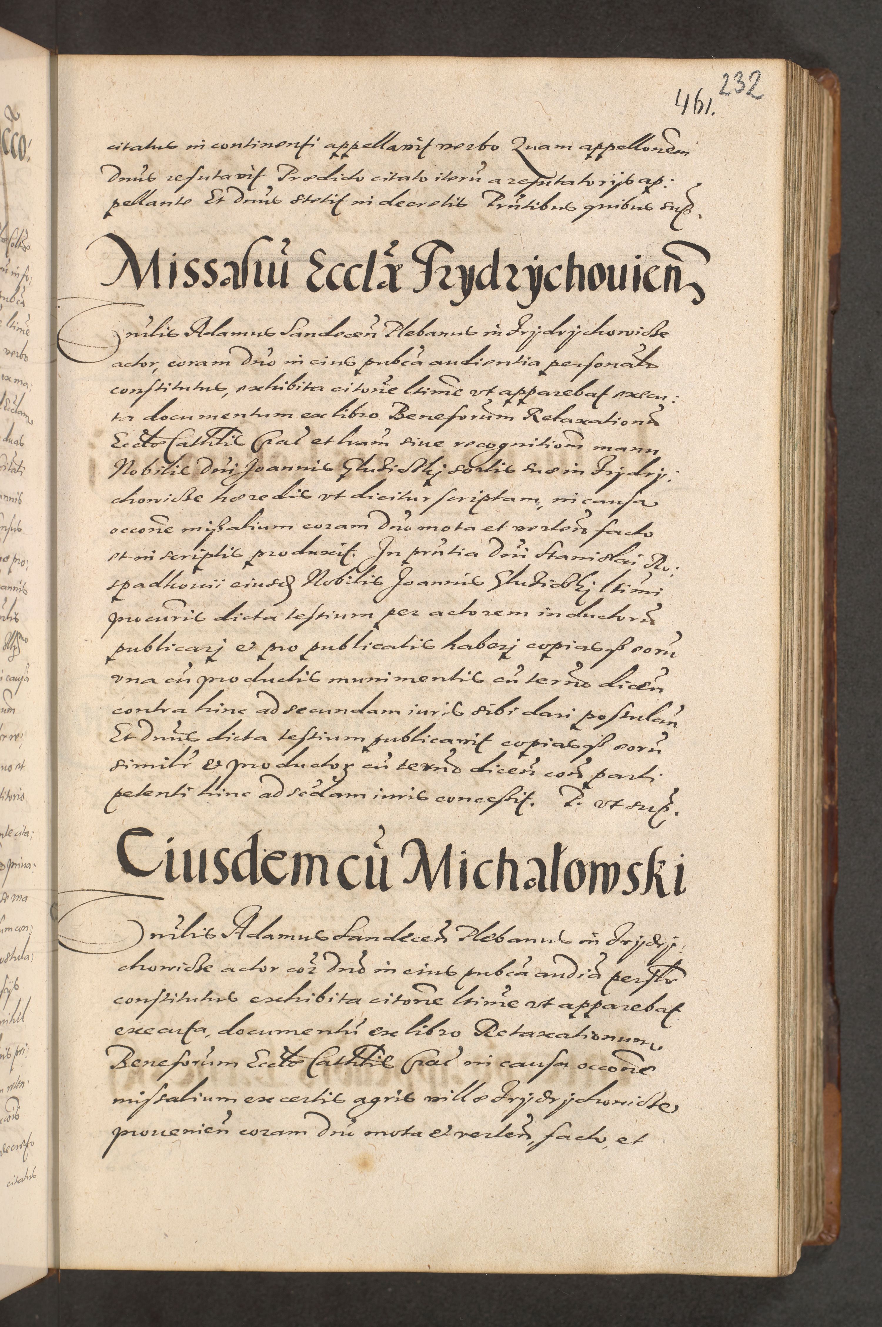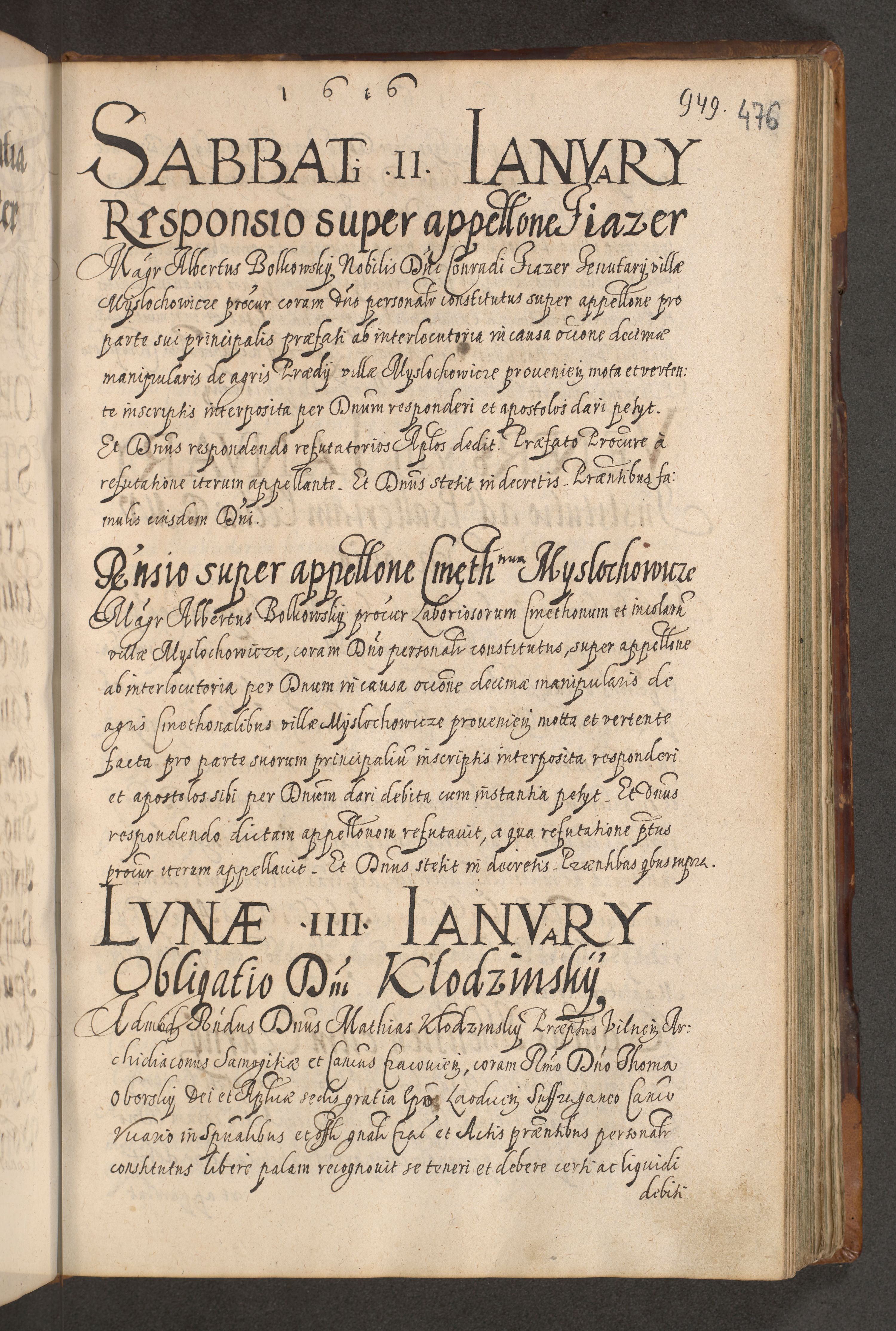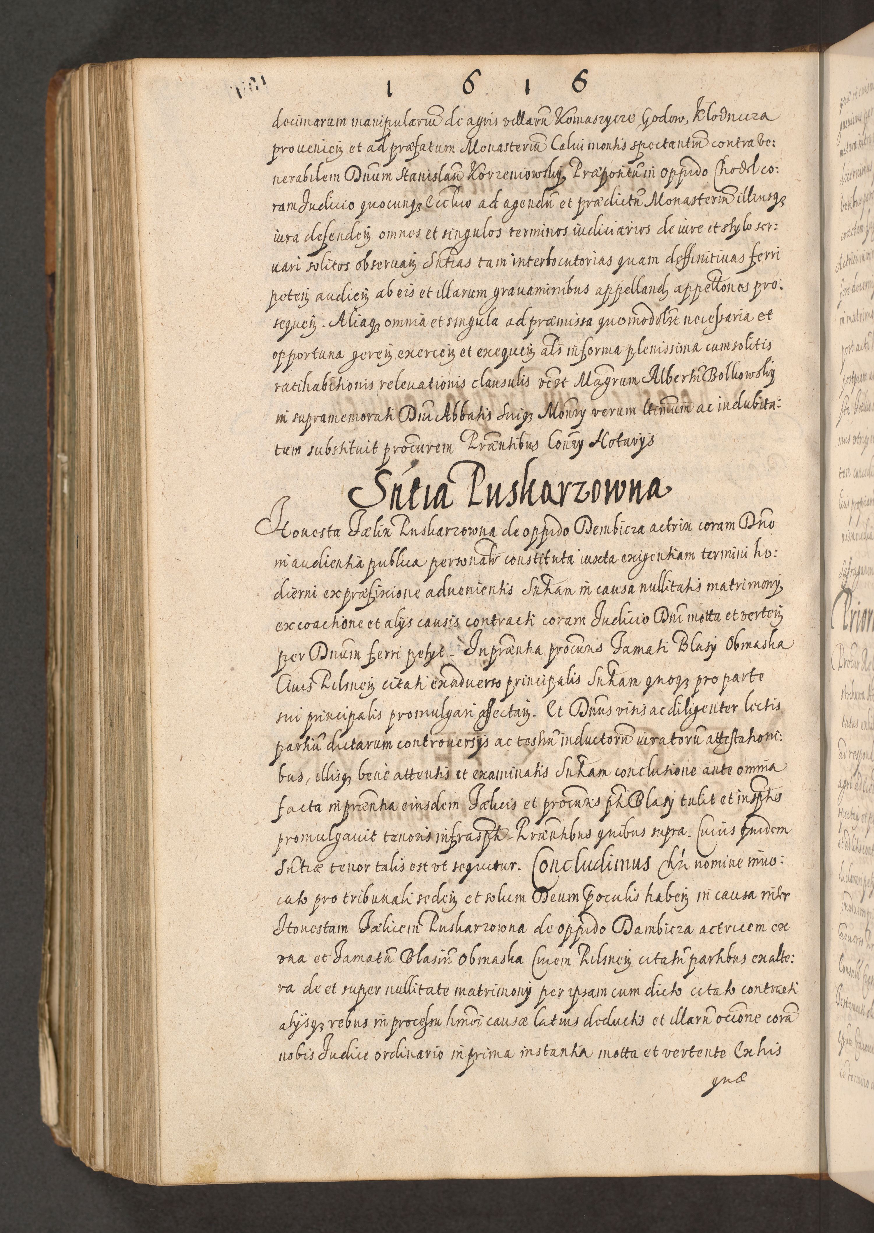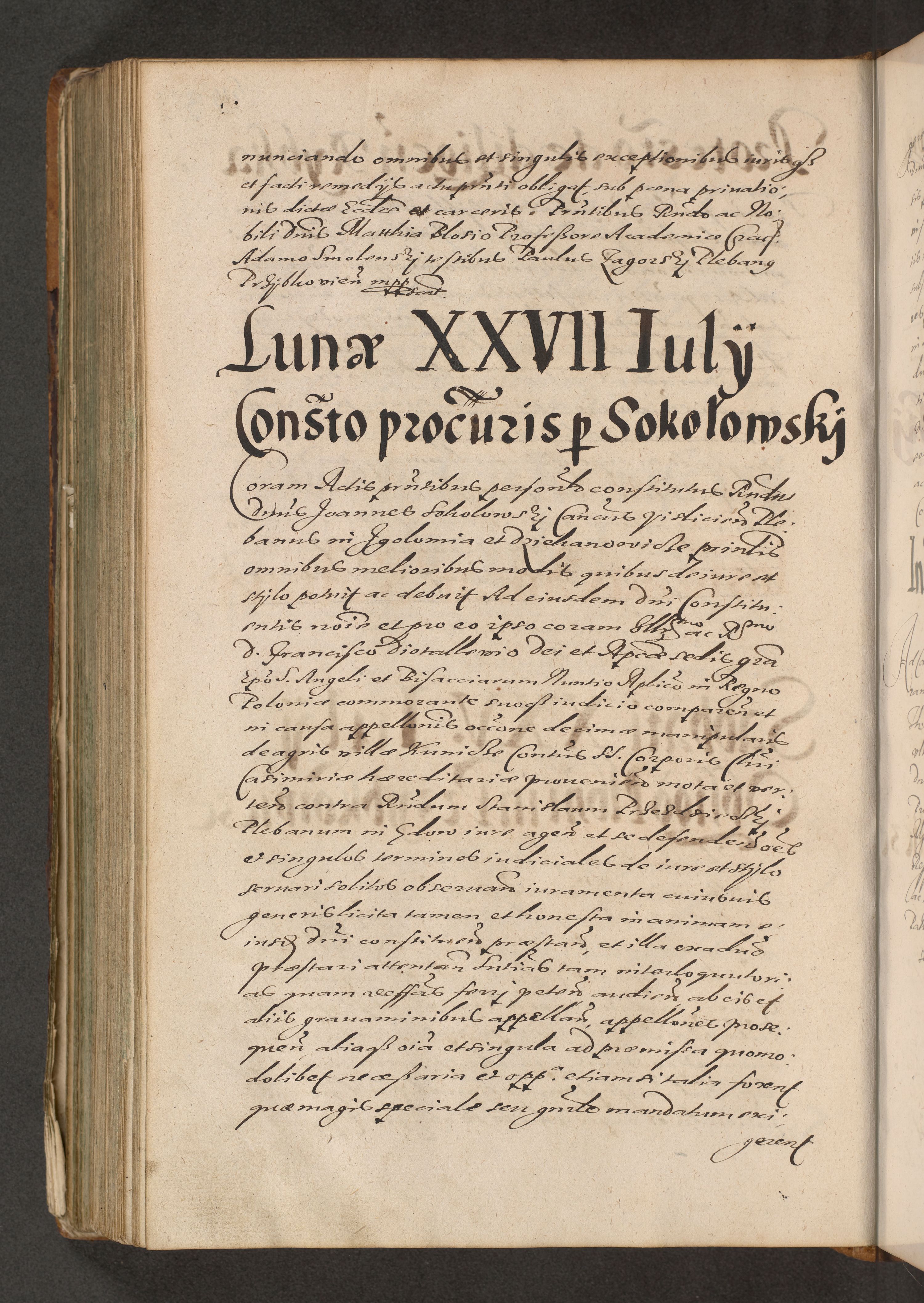 Illustrissimo et Reverendissimo in Christo Patre Domino Domino Petro Tylicki Dei et Apostolice Sedis Gratia Episcopo Cracoviensis Duce Severiensis Acta actorum causarum sententiarum tam interloquutoriarum quam definitivarum decretorum obligationum, quietationum, recognitionum, constitutionum procuratorum etc. etc. coram Admodum Reverendo Domino Thoma Oborski I. V. Doctore Canonico Vicario in Spiritualibus et Officiali generali Cracoviensis in anno Domini Millesimo Sexcentessimo Decimoquarto Cuius Indictio duodecima Pontificus SS. D. N. D. Pauli Divina providentia Papae quinti Anno decimo foeliciter incipiunt