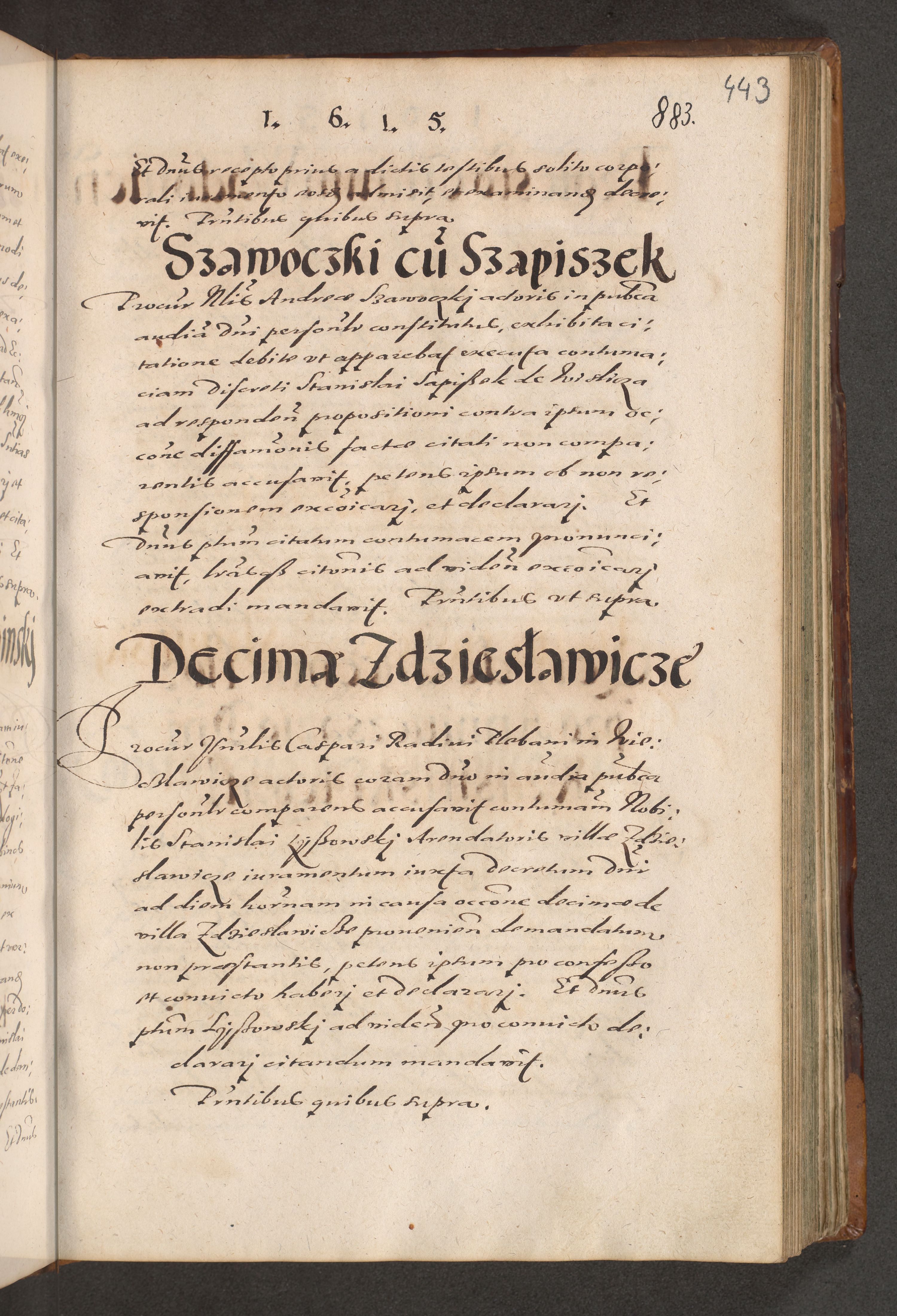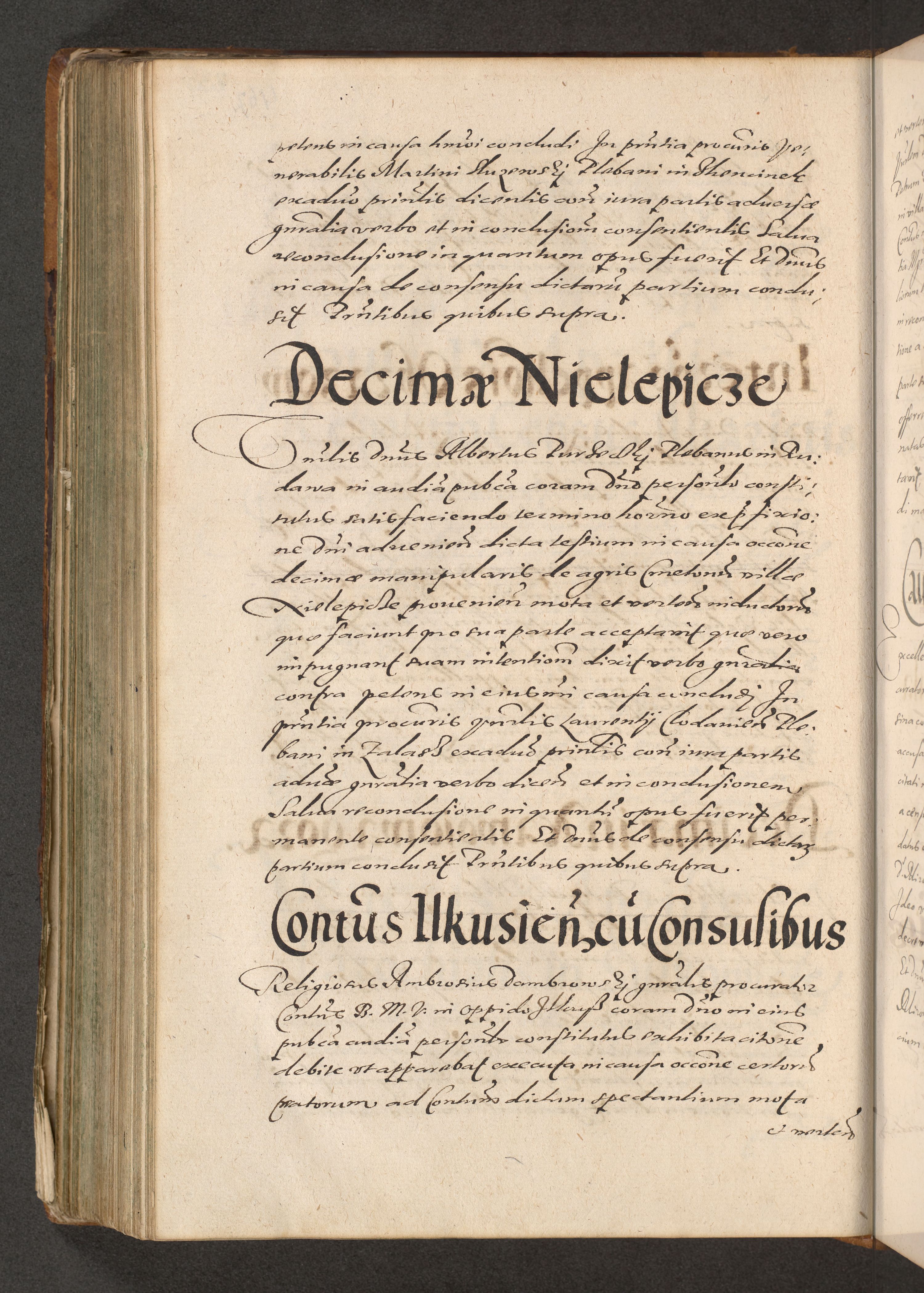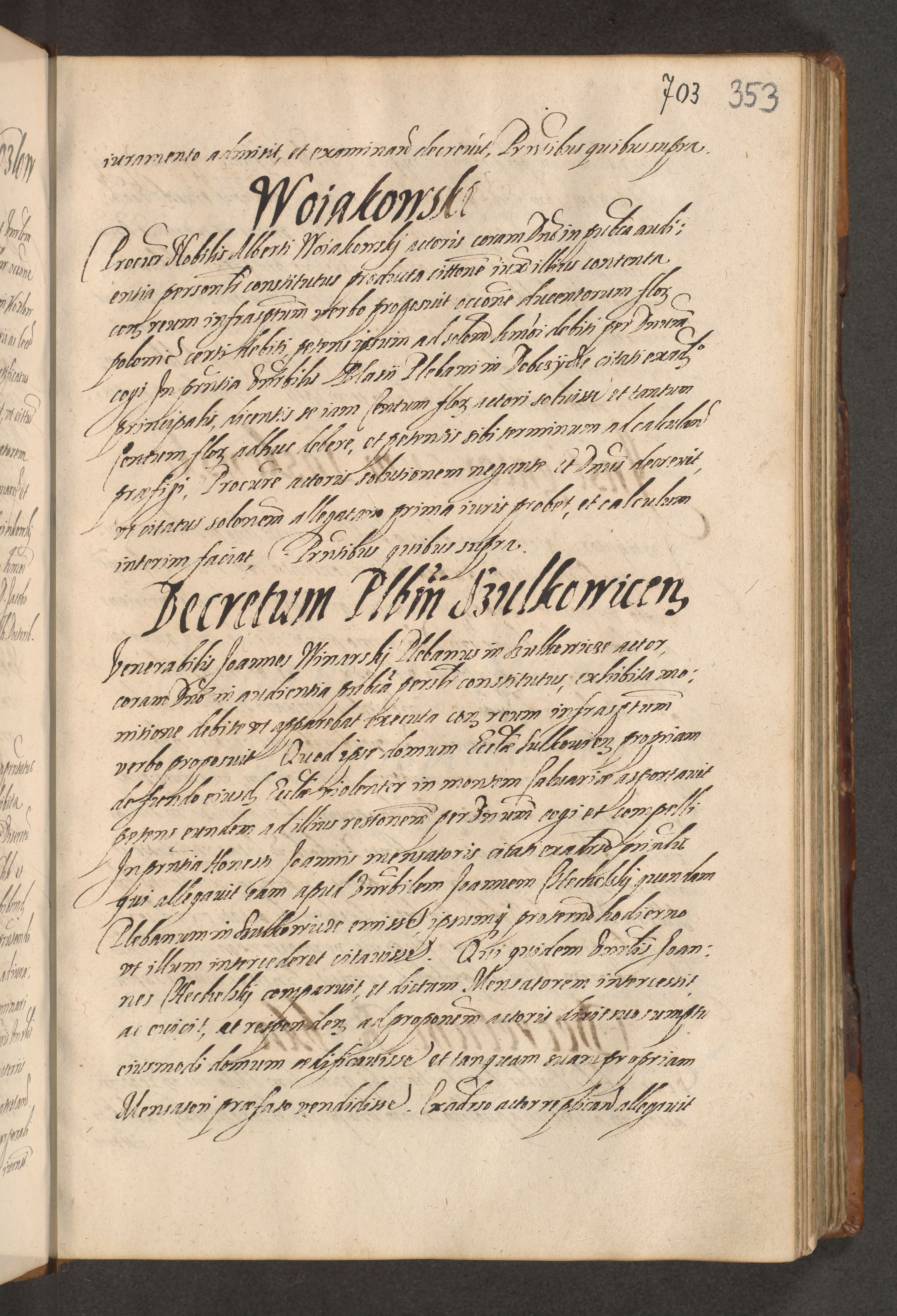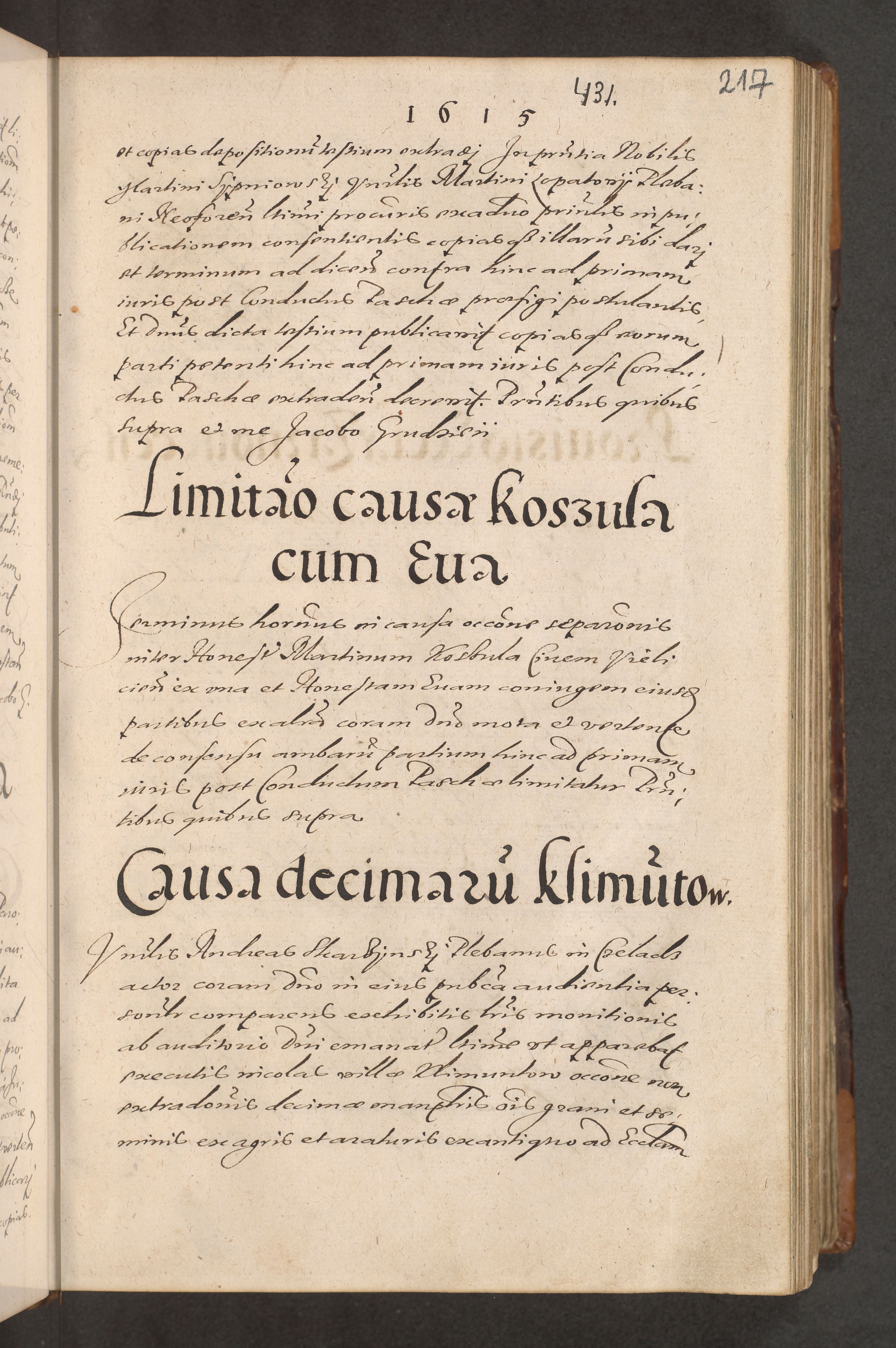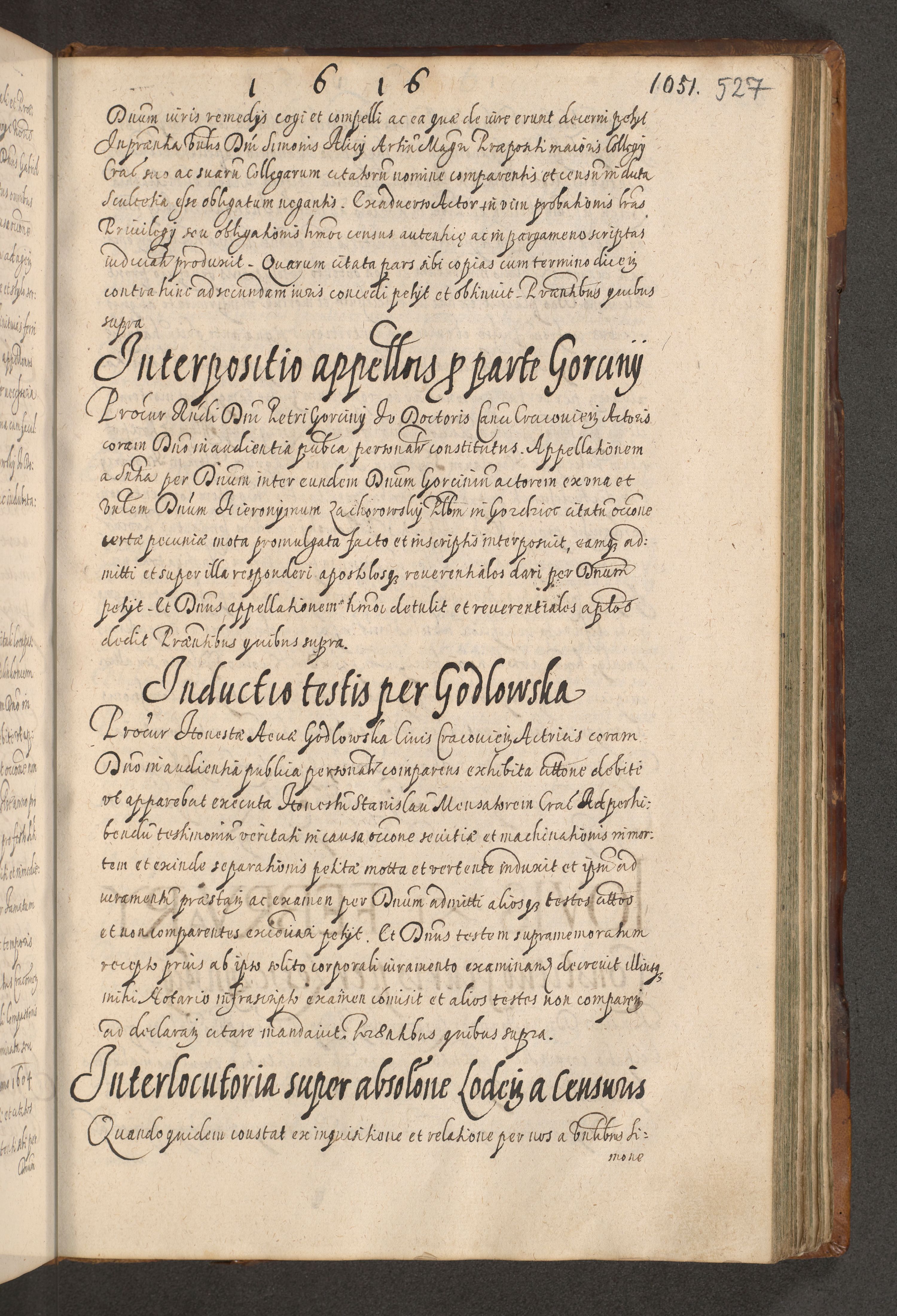 Illustrissimo et Reverendissimo in Christo Patre Domino Domino Petro Tylicki Dei et Apostolice Sedis Gratia Episcopo Cracoviensis Duce Severiensis Acta actorum causarum sententiarum tam interloquutoriarum quam definitivarum decretorum obligationum, quietationum, recognitionum, constitutionum procuratorum etc. etc. coram Admodum Reverendo Domino Thoma Oborski I. V. Doctore Canonico Vicario in Spiritualibus et Officiali generali Cracoviensis in anno Domini Millesimo Sexcentessimo Decimoquarto Cuius Indictio duodecima Pontificus SS. D. N. D. Pauli Divina providentia Papae quinti Anno decimo foeliciter incipiunt