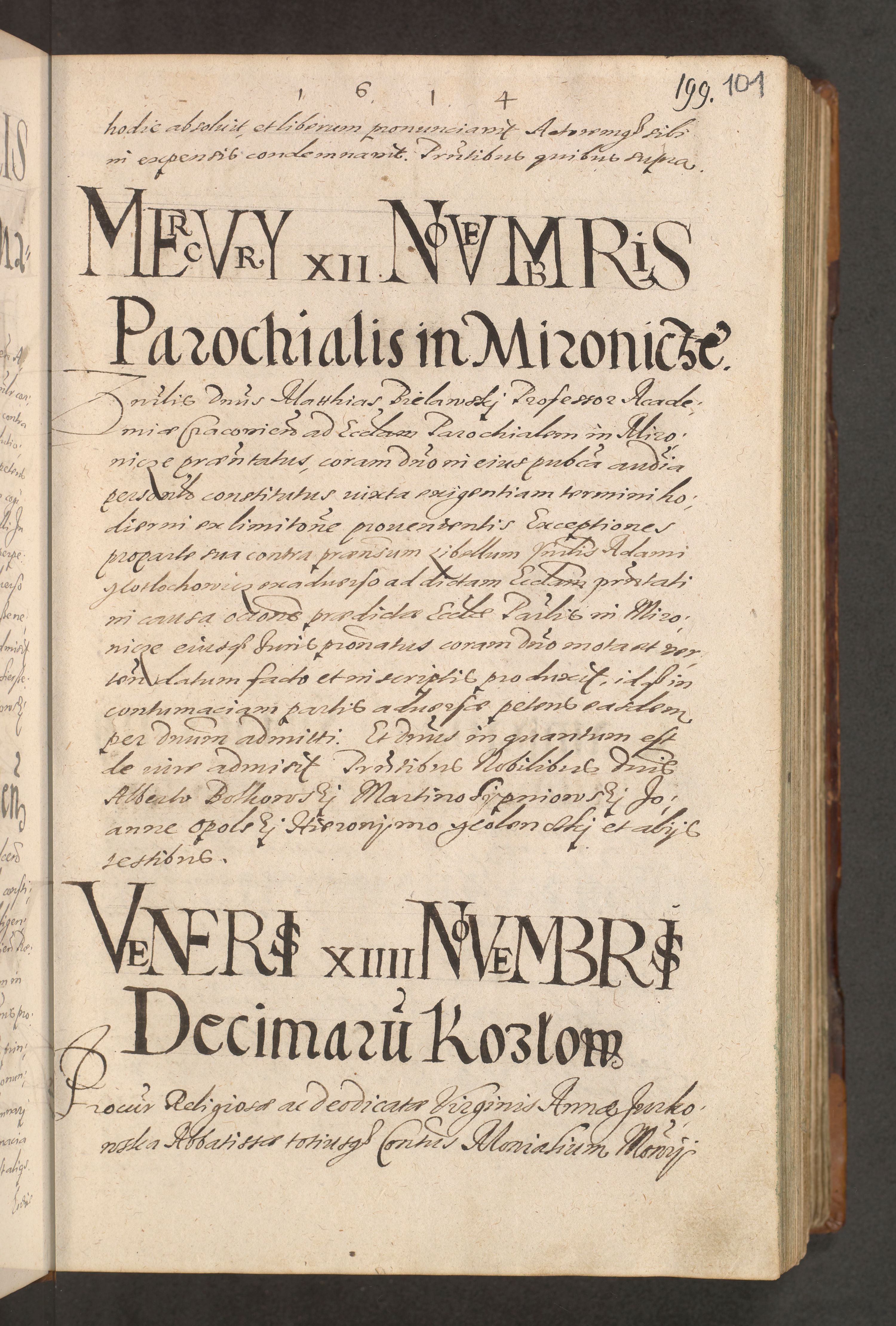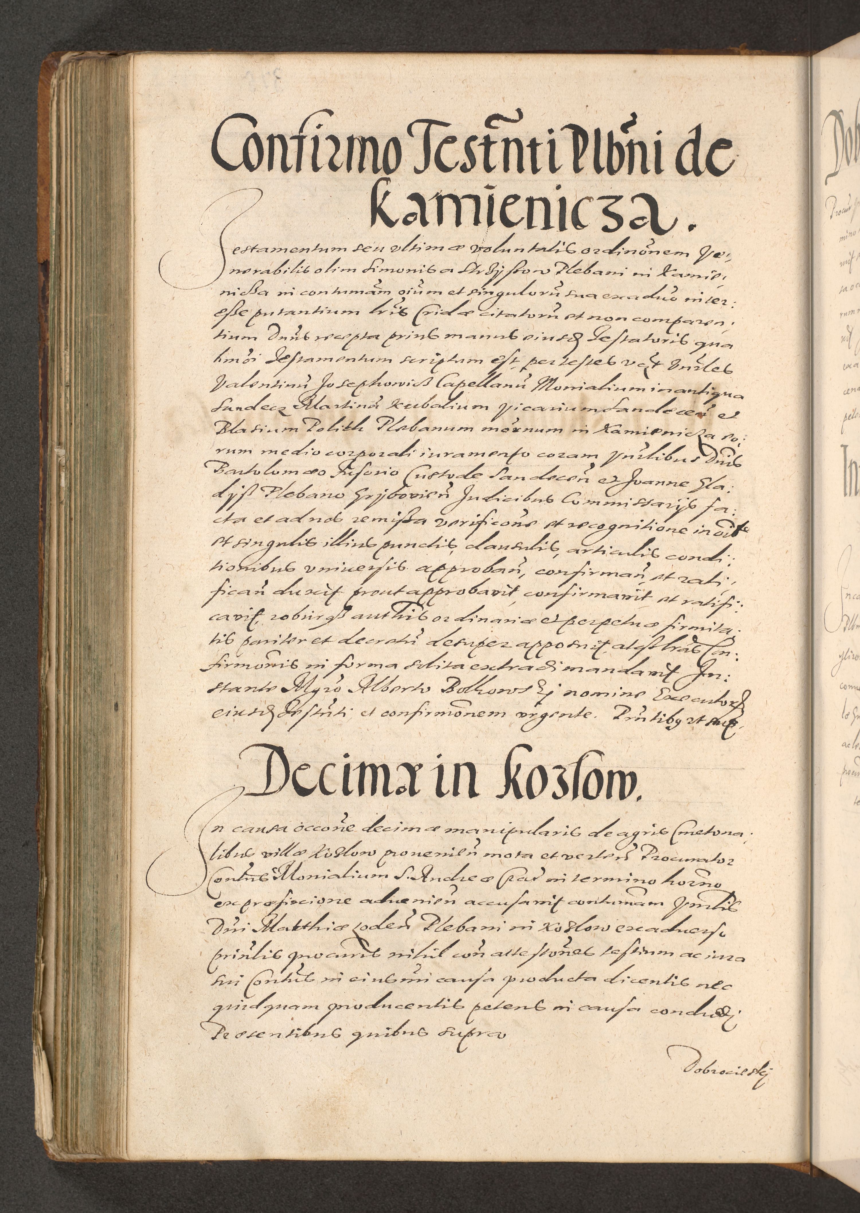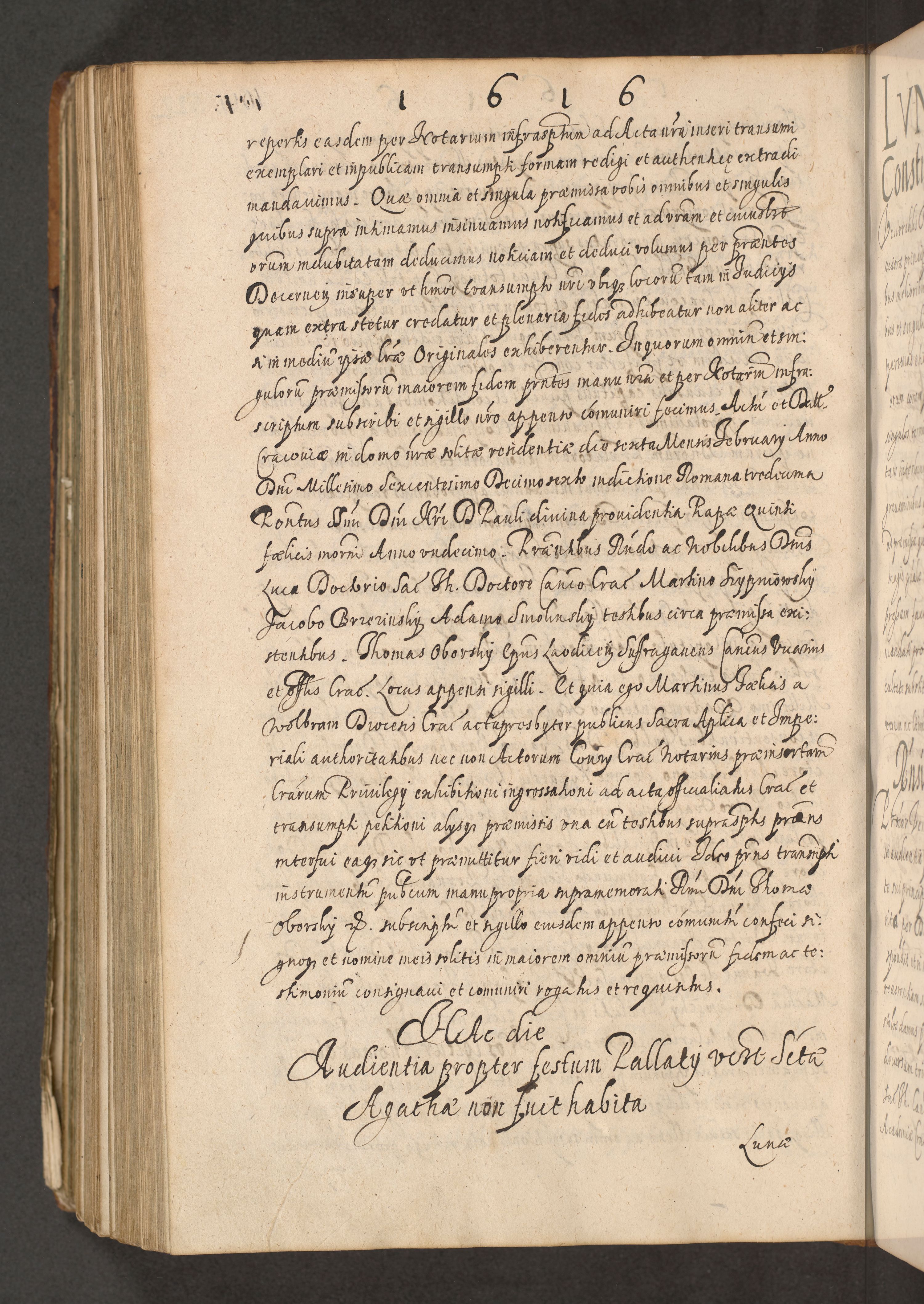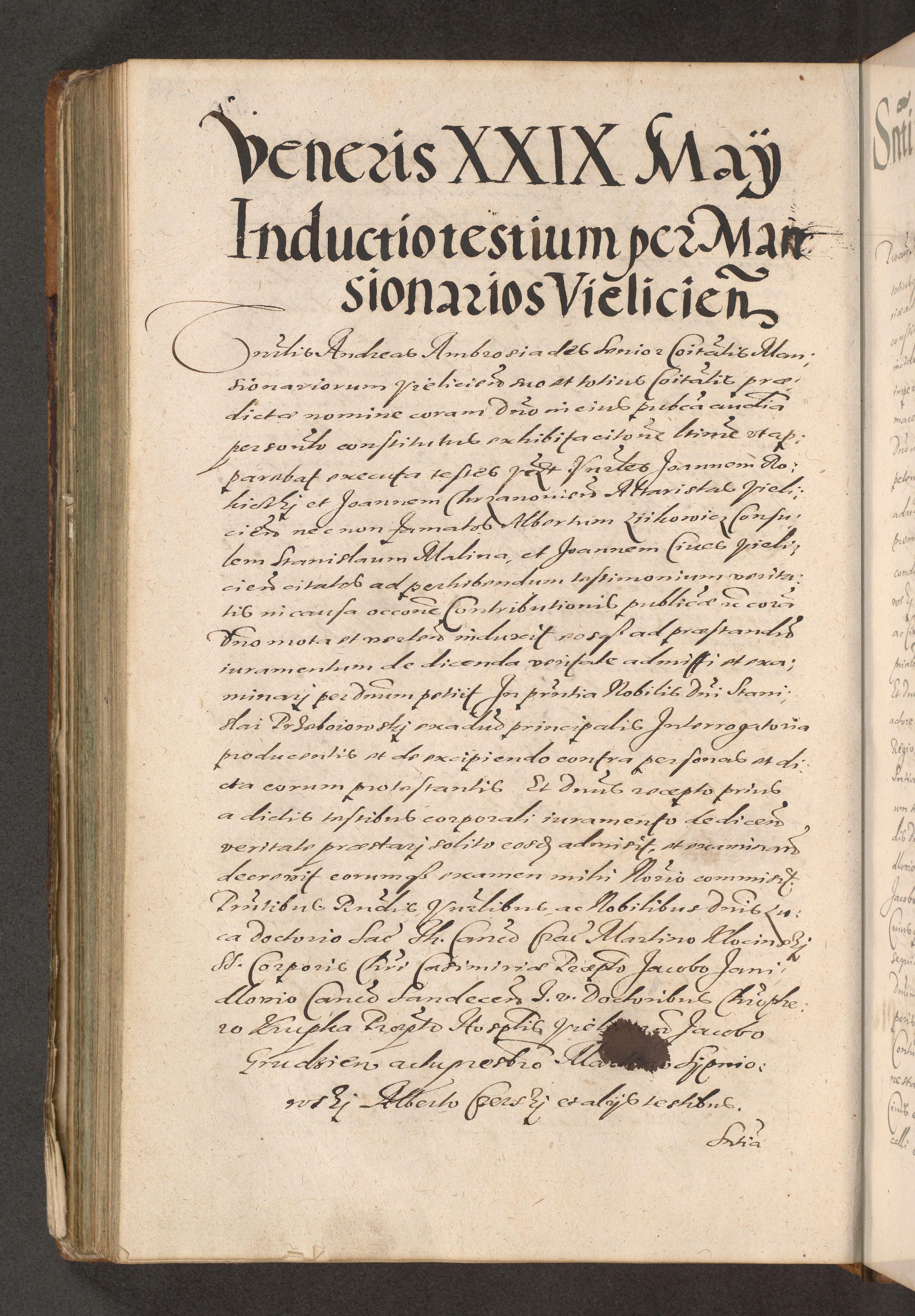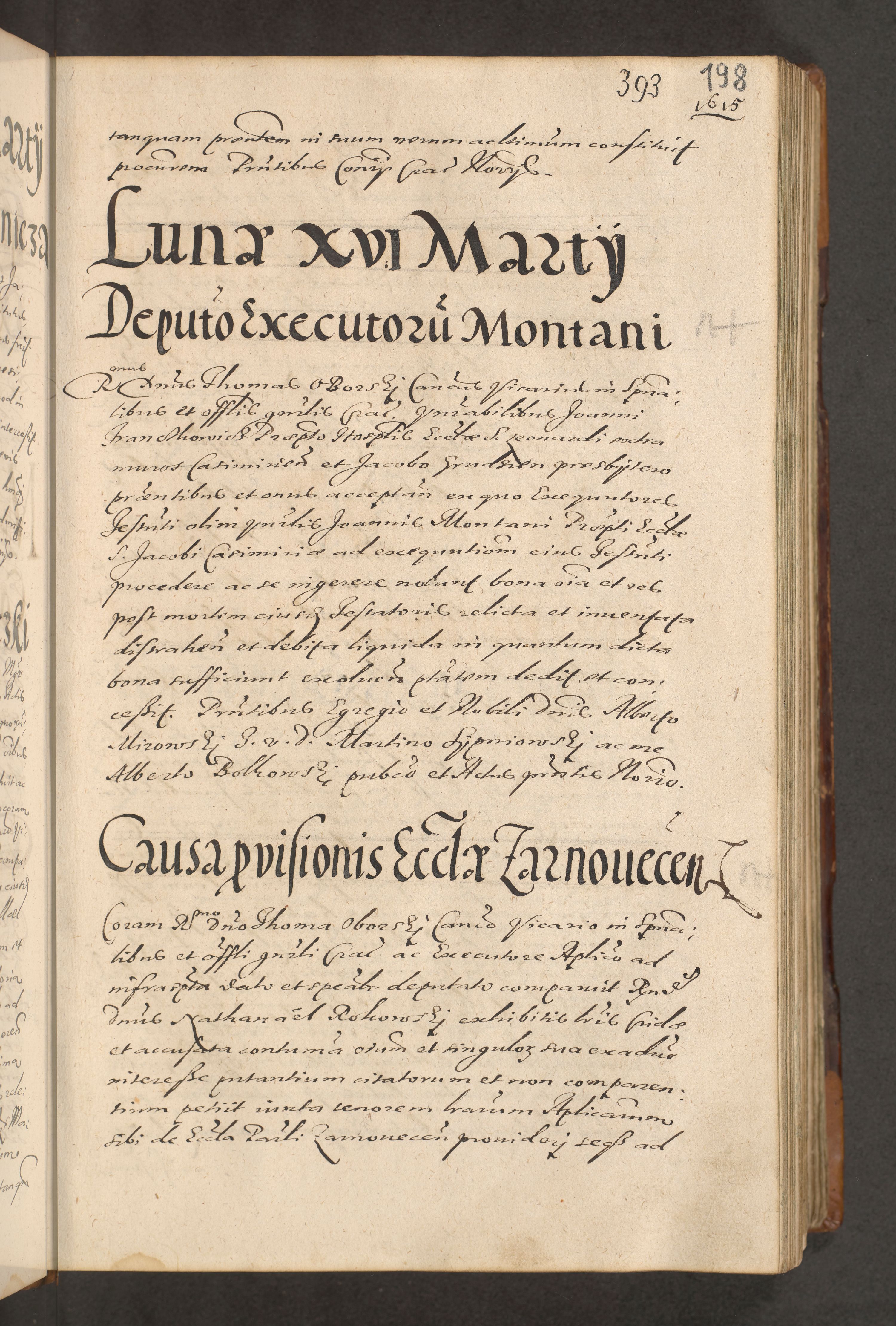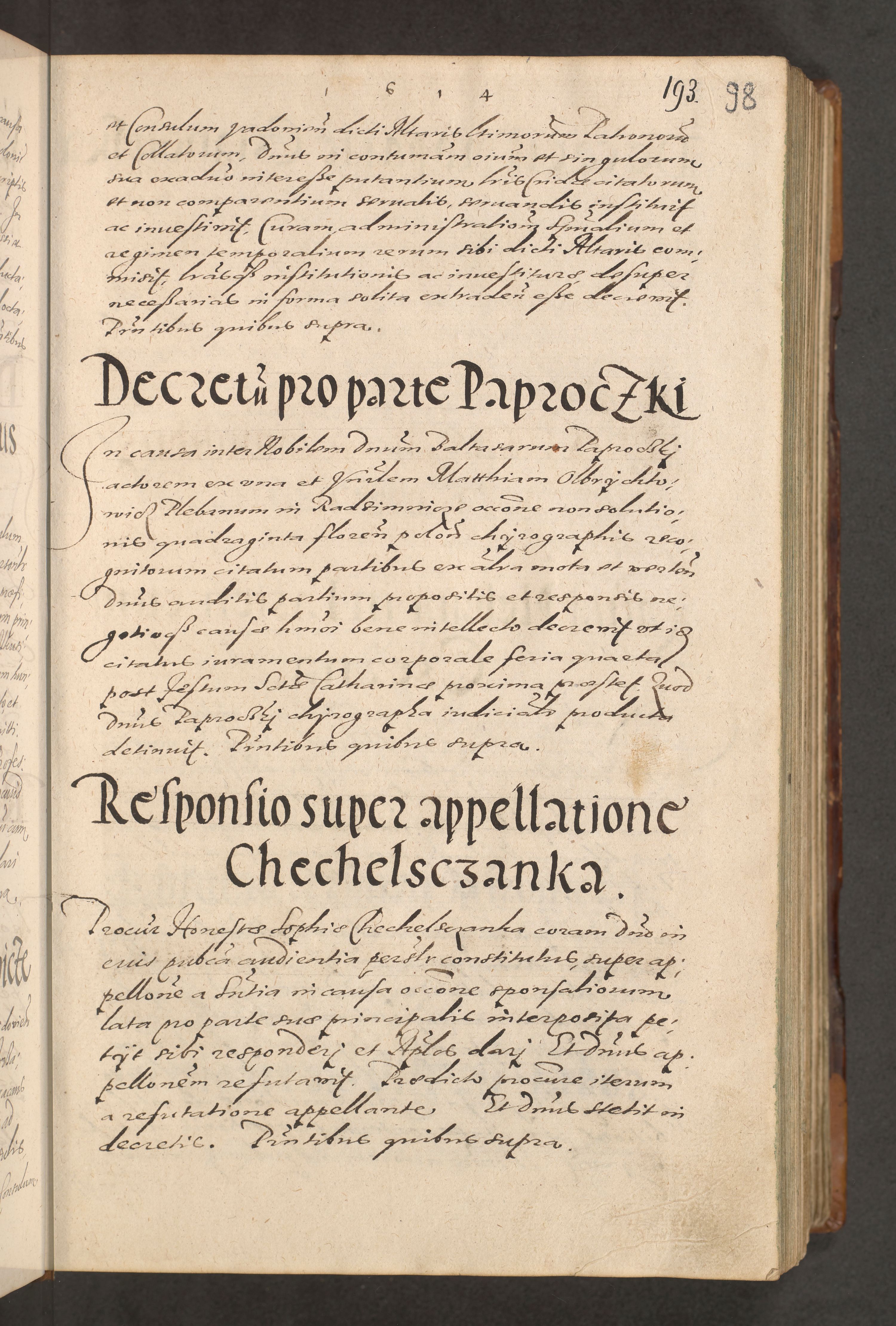 Illustrissimo et Reverendissimo in Christo Patre Domino Domino Petro Tylicki Dei et Apostolice Sedis Gratia Episcopo Cracoviensis Duce Severiensis Acta actorum causarum sententiarum tam interloquutoriarum quam definitivarum decretorum obligationum, quietationum, recognitionum, constitutionum procuratorum etc. etc. coram Admodum Reverendo Domino Thoma Oborski I. V. Doctore Canonico Vicario in Spiritualibus et Officiali generali Cracoviensis in anno Domini Millesimo Sexcentessimo Decimoquarto Cuius Indictio duodecima Pontificus SS. D. N. D. Pauli Divina providentia Papae quinti Anno decimo foeliciter incipiunt