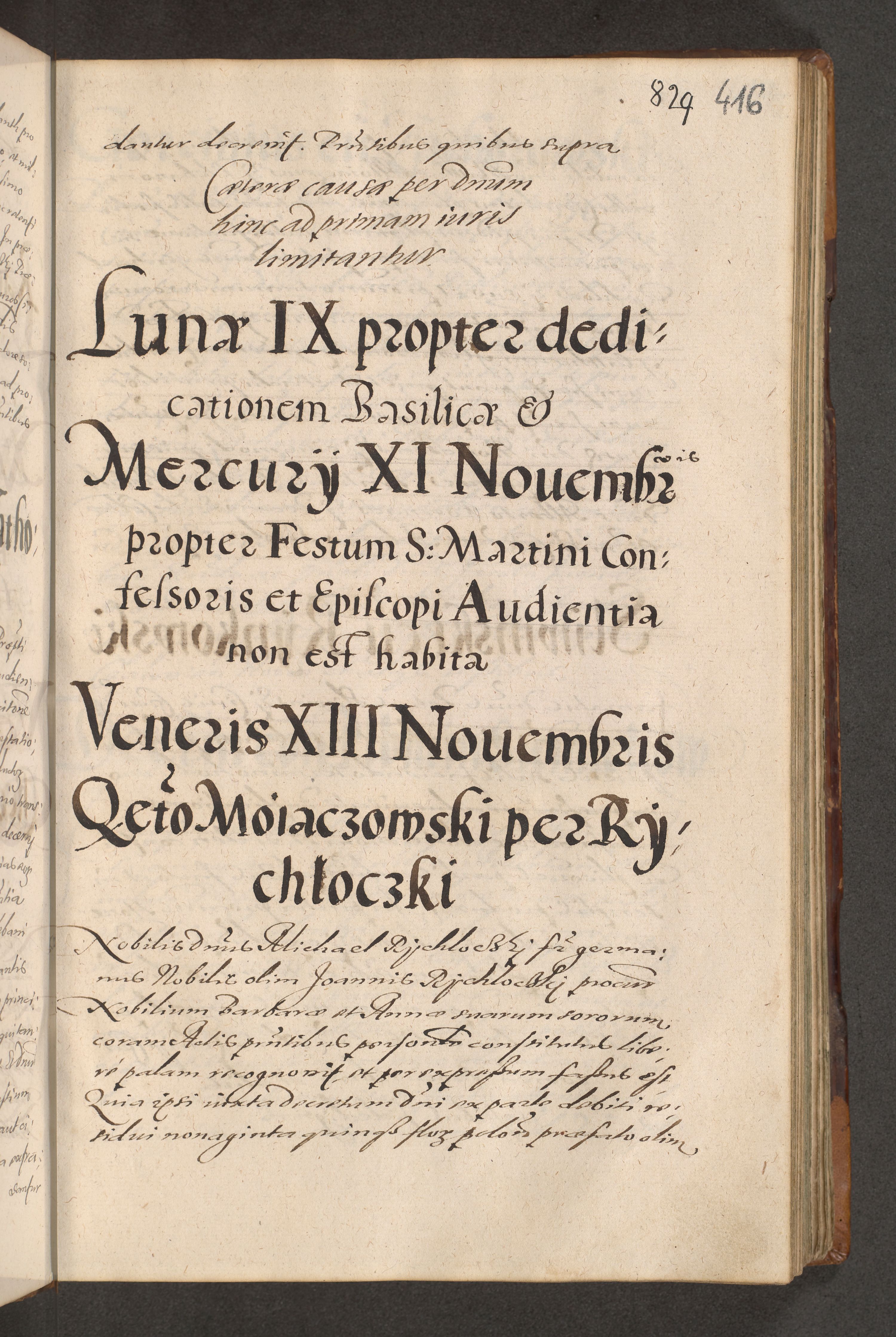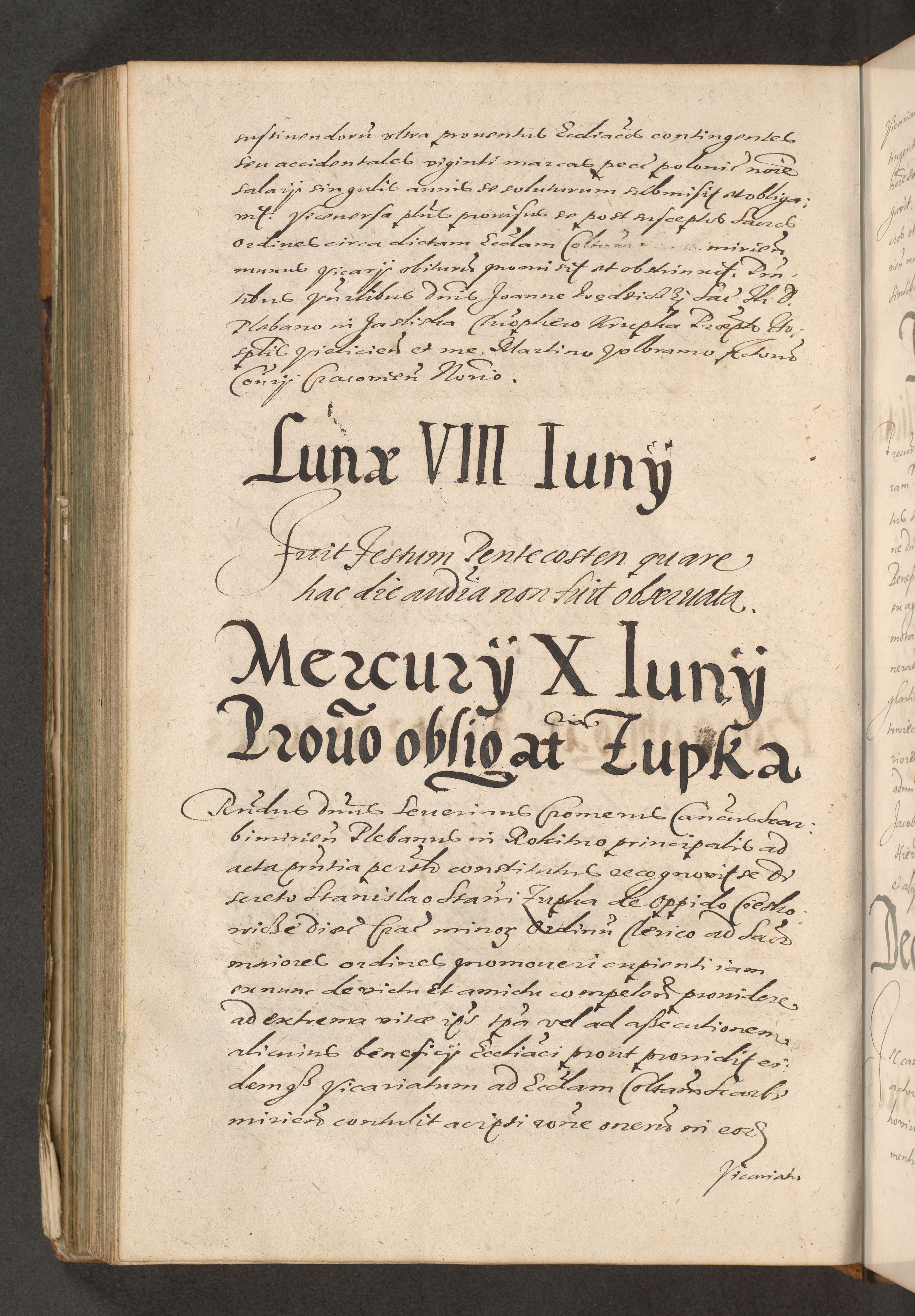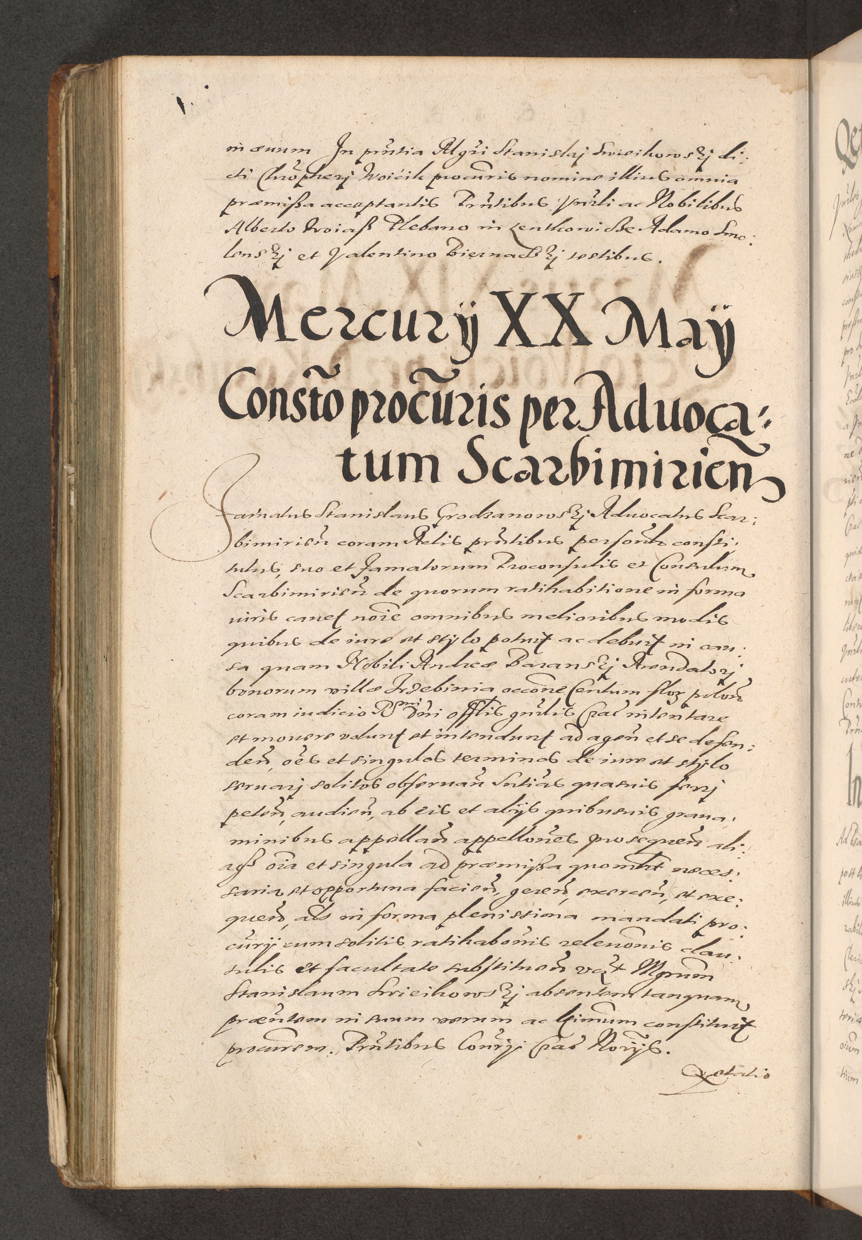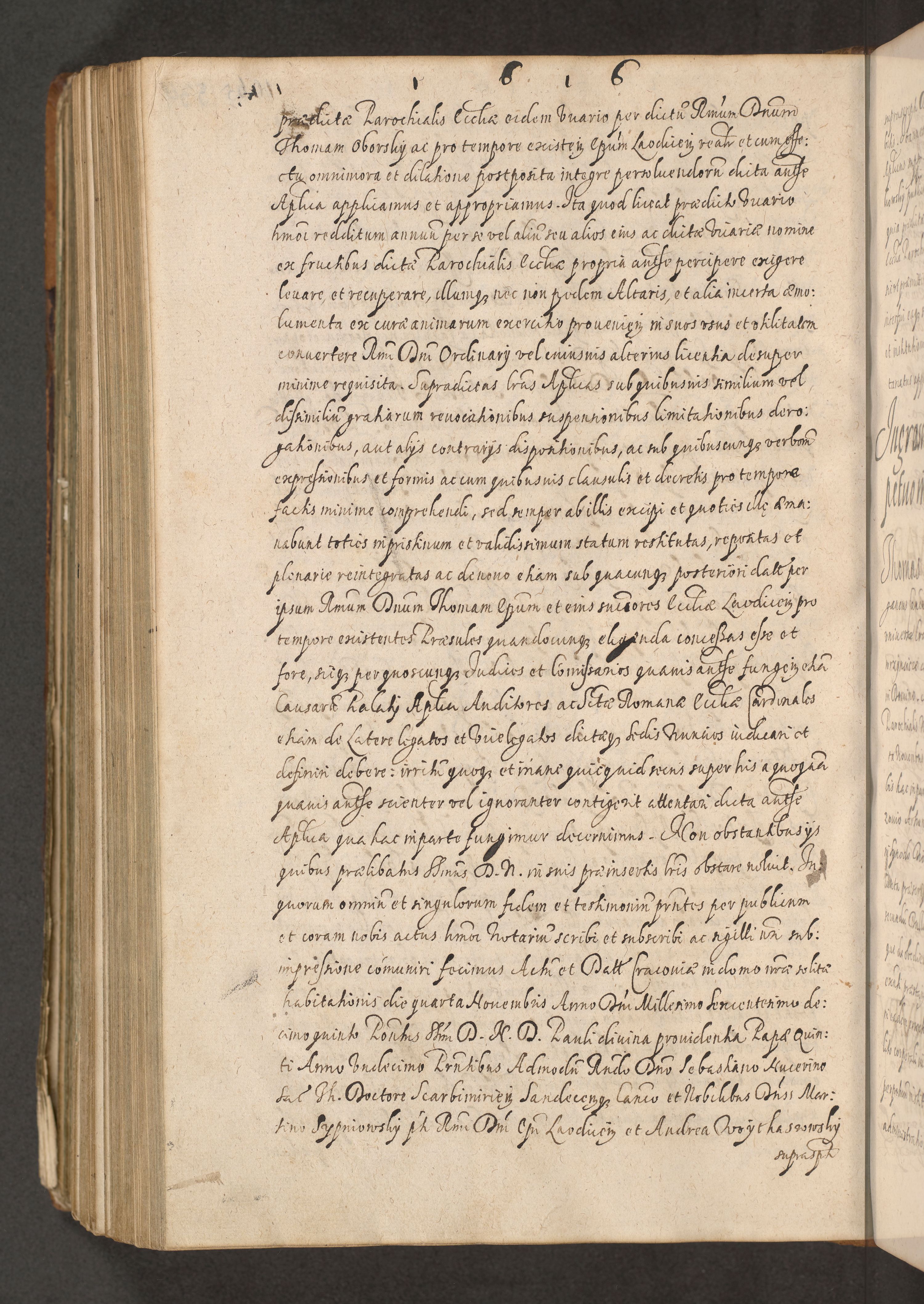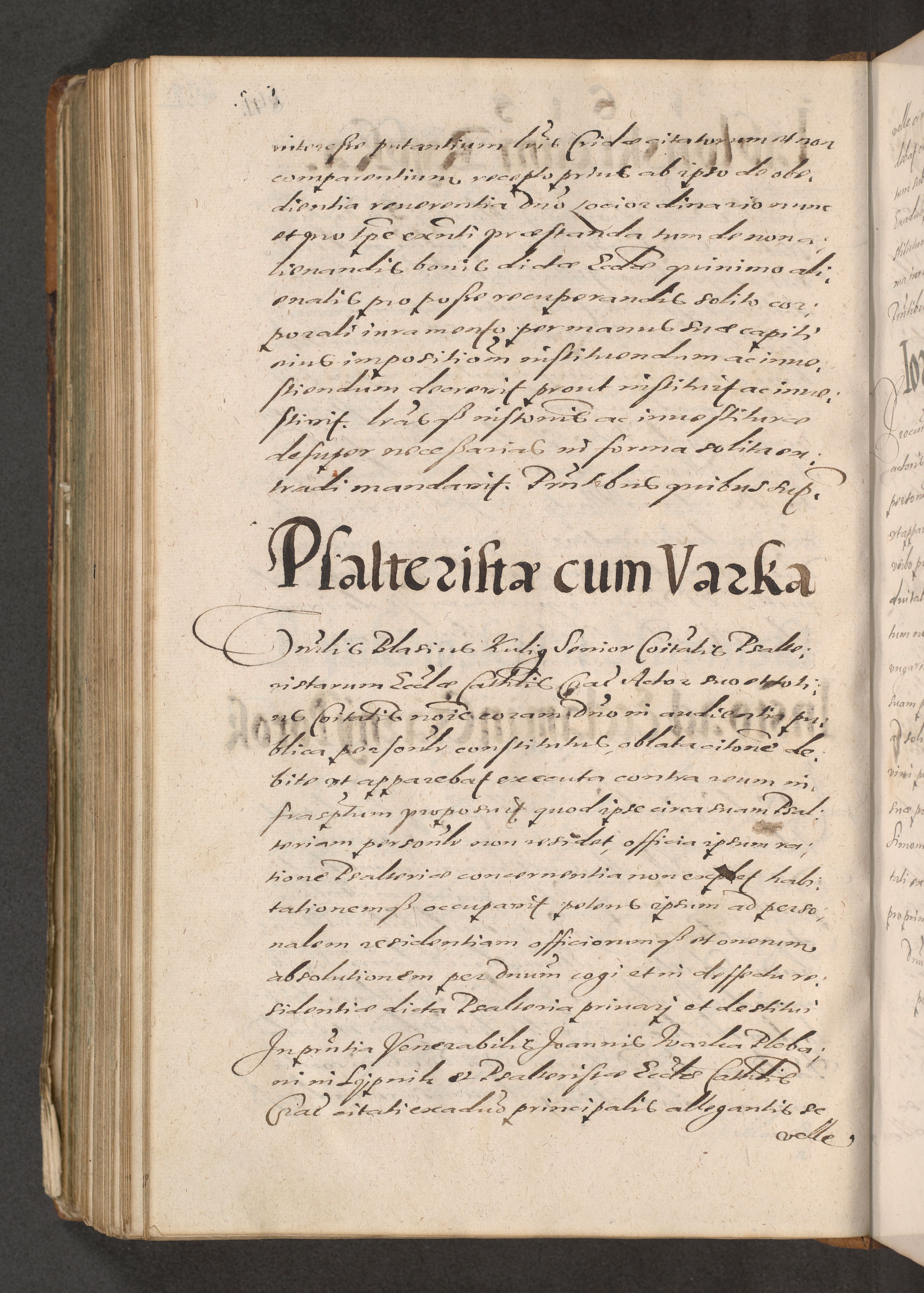 Illustrissimo et Reverendissimo in Christo Patre Domino Domino Petro Tylicki Dei et Apostolice Sedis Gratia Episcopo Cracoviensis Duce Severiensis Acta actorum causarum sententiarum tam interloquutoriarum quam definitivarum decretorum obligationum, quietationum, recognitionum, constitutionum procuratorum etc. etc. coram Admodum Reverendo Domino Thoma Oborski I. V. Doctore Canonico Vicario in Spiritualibus et Officiali generali Cracoviensis in anno Domini Millesimo Sexcentessimo Decimoquarto Cuius Indictio duodecima Pontificus SS. D. N. D. Pauli Divina providentia Papae quinti Anno decimo foeliciter incipiunt