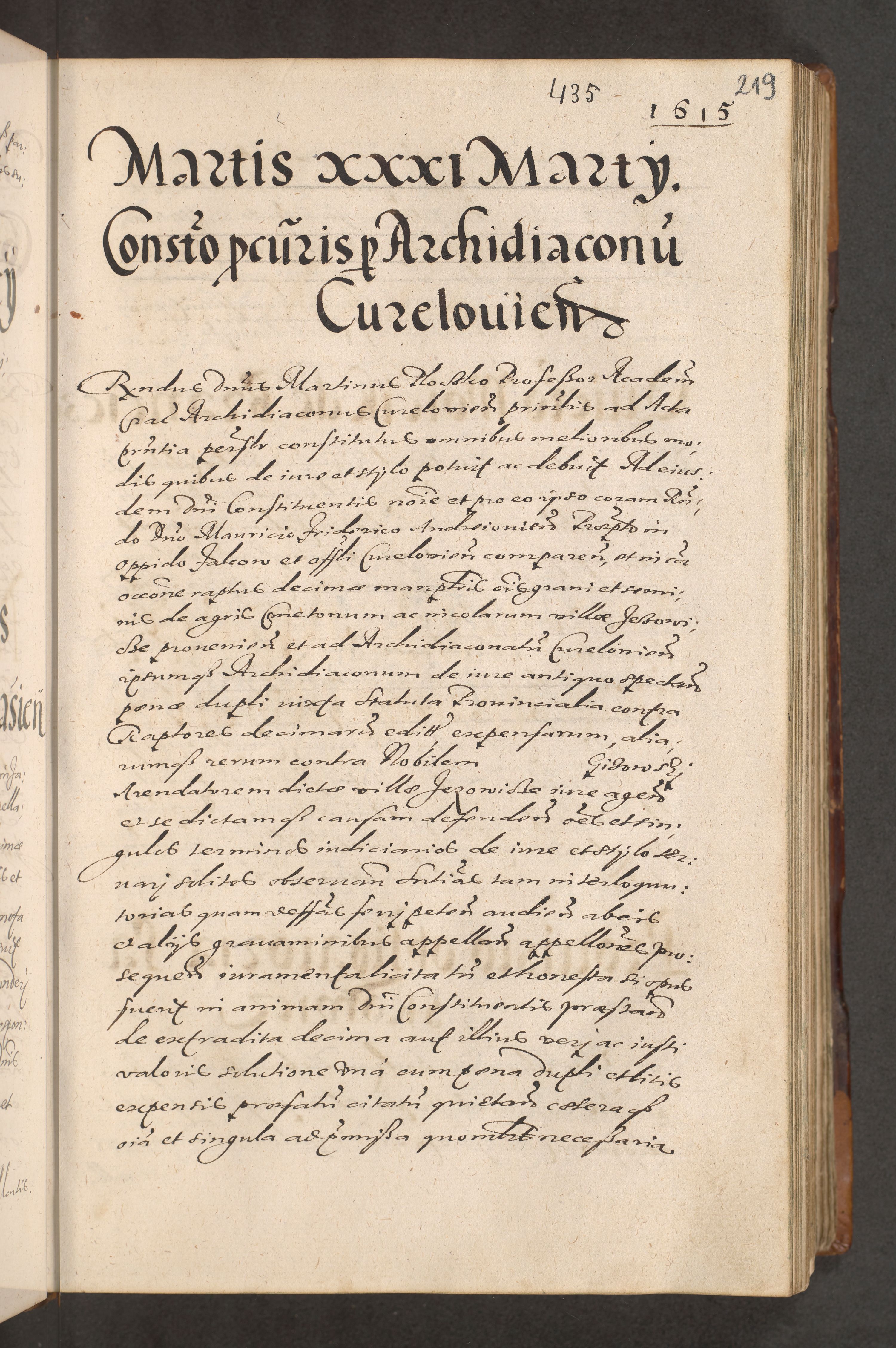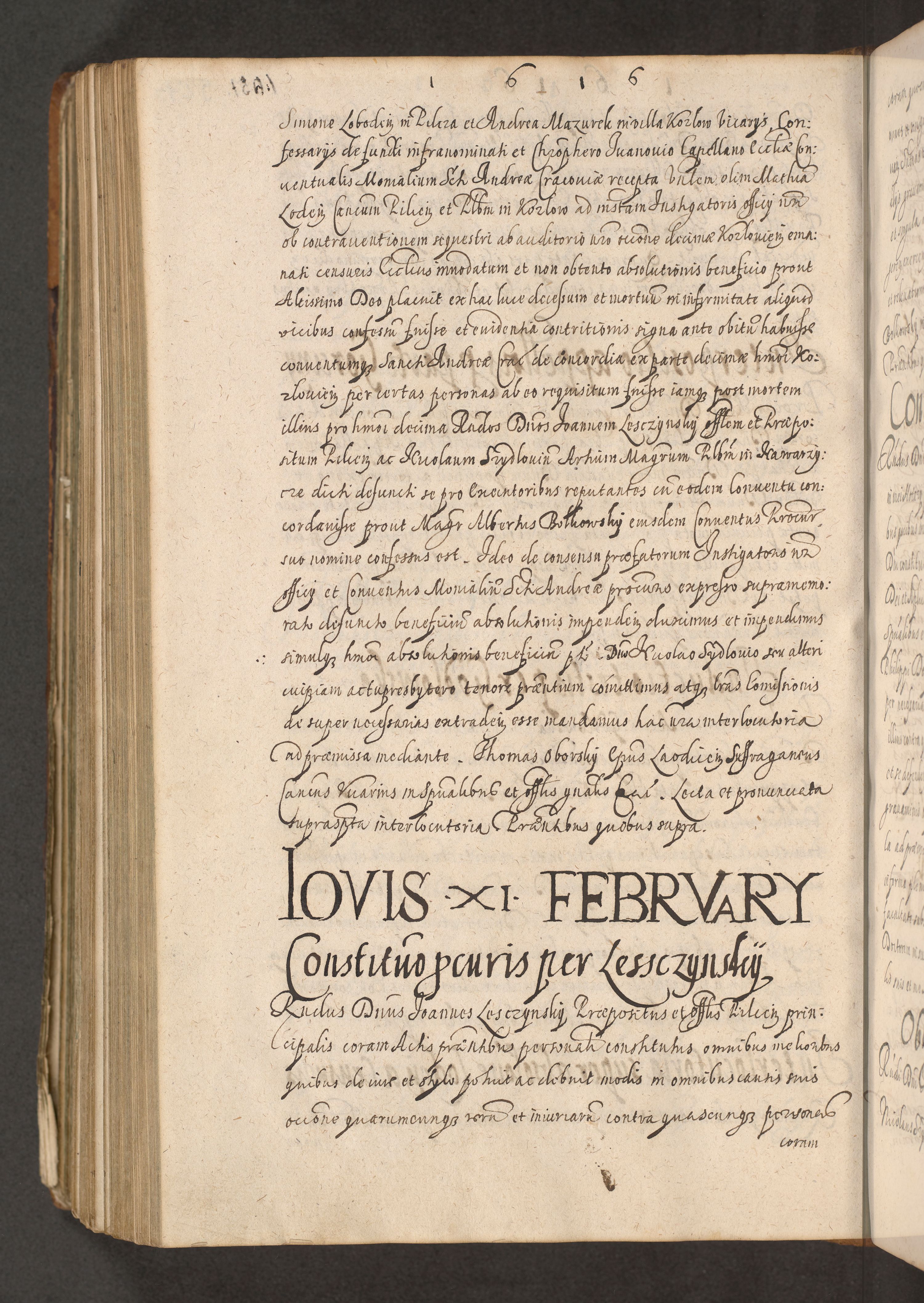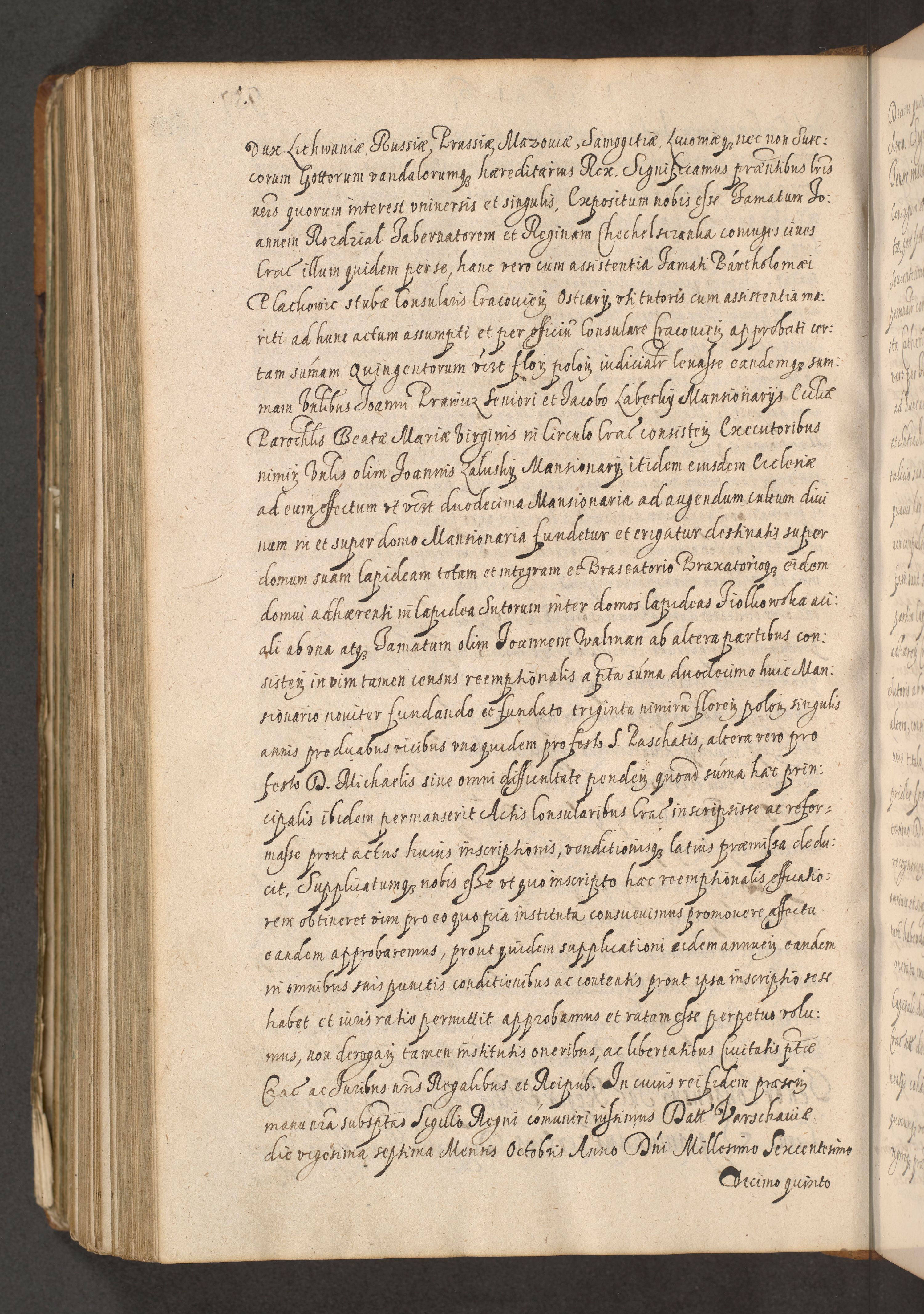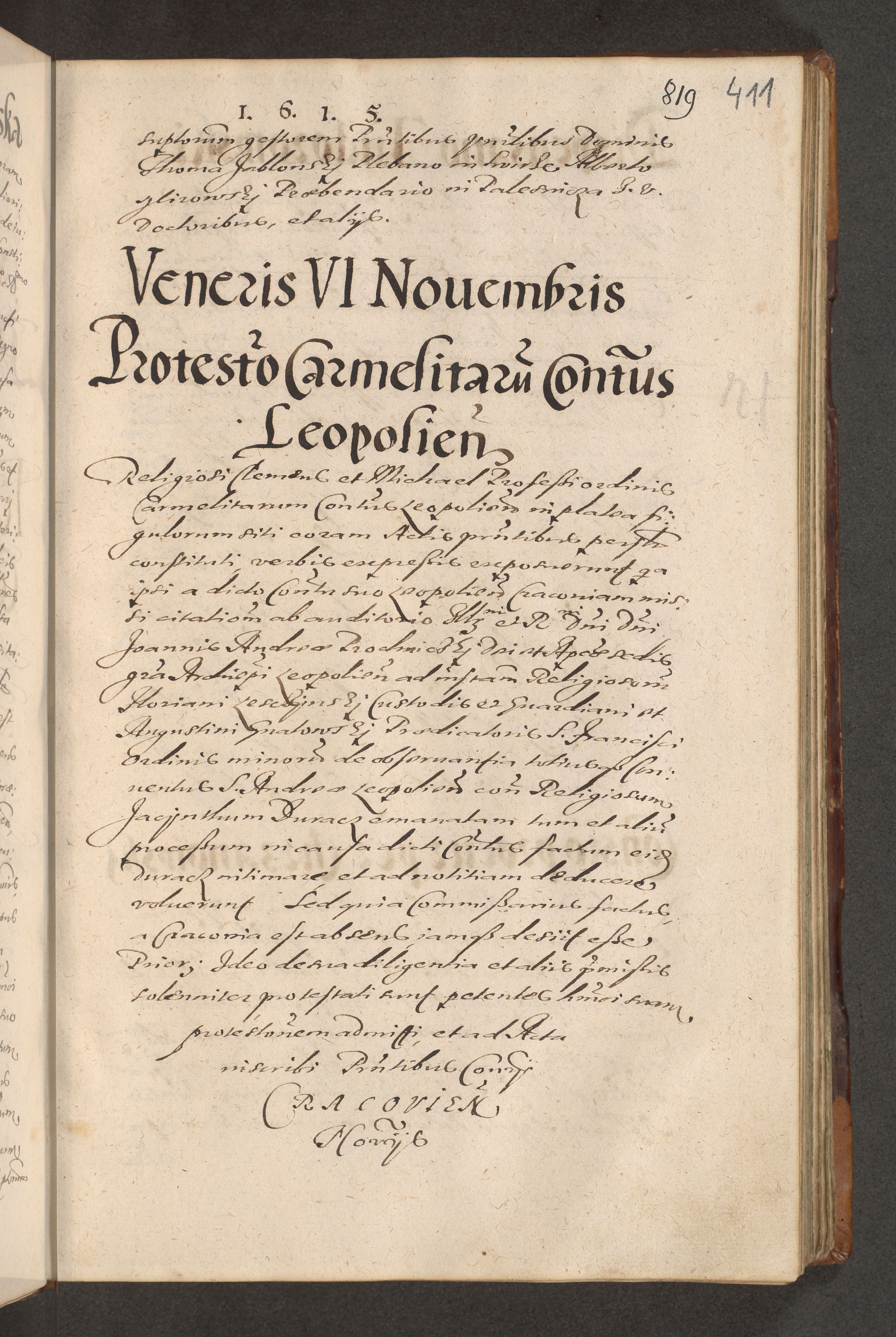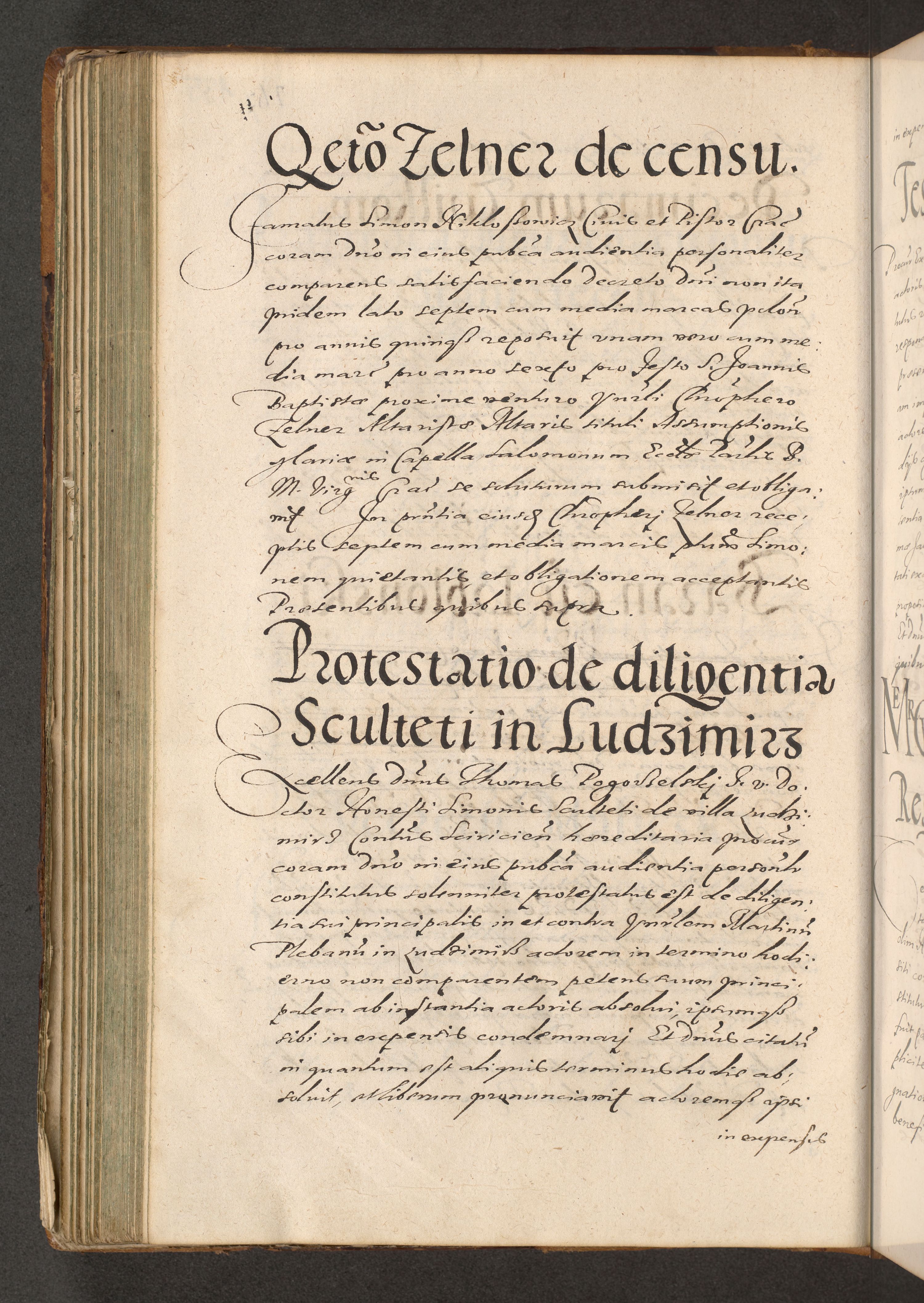 Illustrissimo et Reverendissimo in Christo Patre Domino Domino Petro Tylicki Dei et Apostolice Sedis Gratia Episcopo Cracoviensis Duce Severiensis Acta actorum causarum sententiarum tam interloquutoriarum quam definitivarum decretorum obligationum, quietationum, recognitionum, constitutionum procuratorum etc. etc. coram Admodum Reverendo Domino Thoma Oborski I. V. Doctore Canonico Vicario in Spiritualibus et Officiali generali Cracoviensis in anno Domini Millesimo Sexcentessimo Decimoquarto Cuius Indictio duodecima Pontificus SS. D. N. D. Pauli Divina providentia Papae quinti Anno decimo foeliciter incipiunt