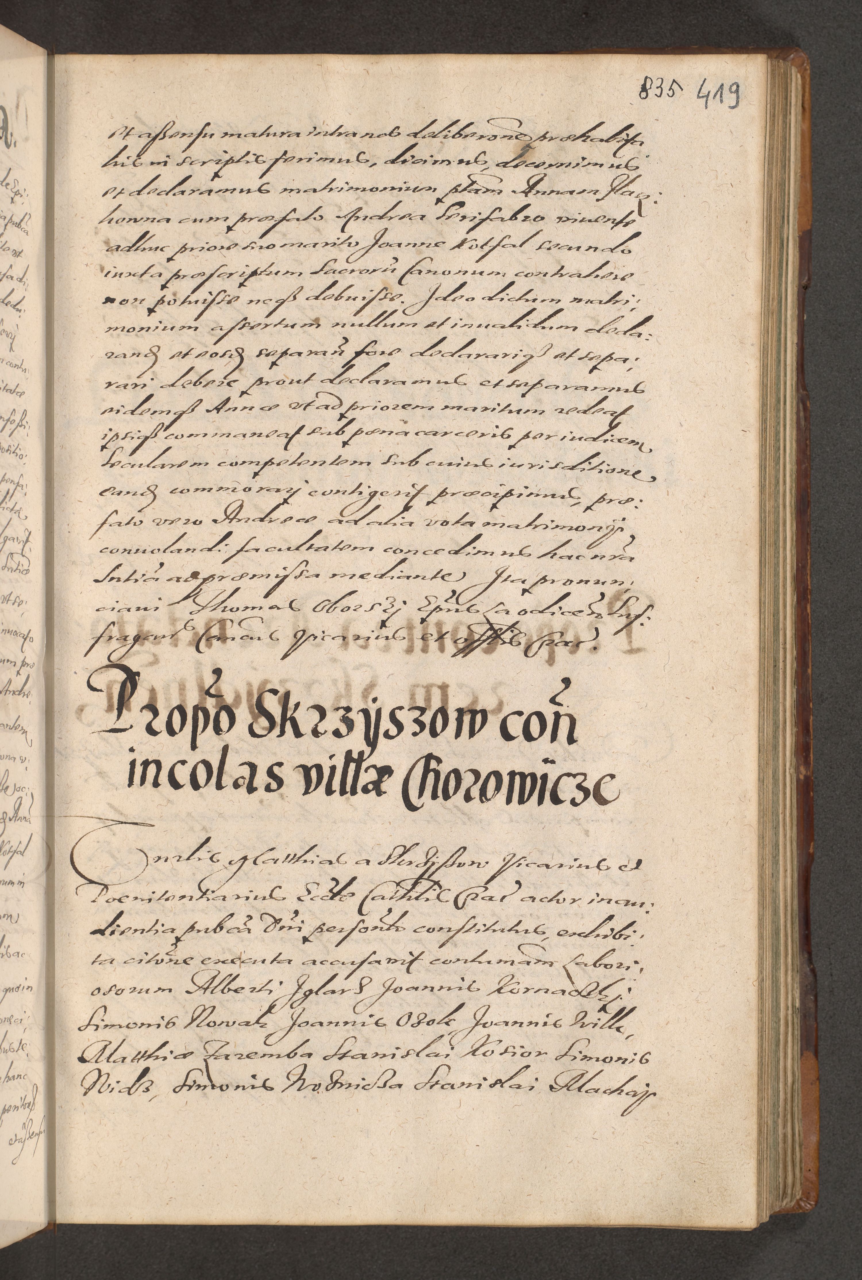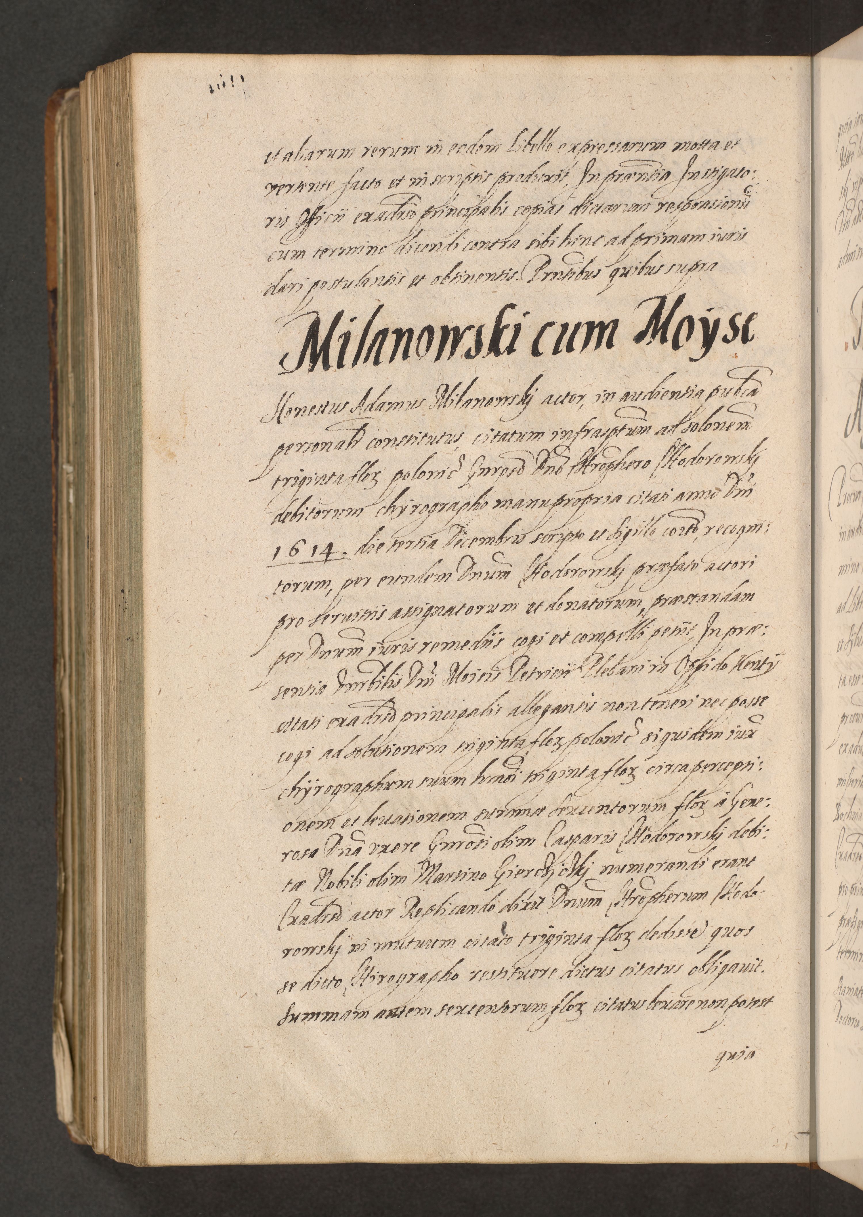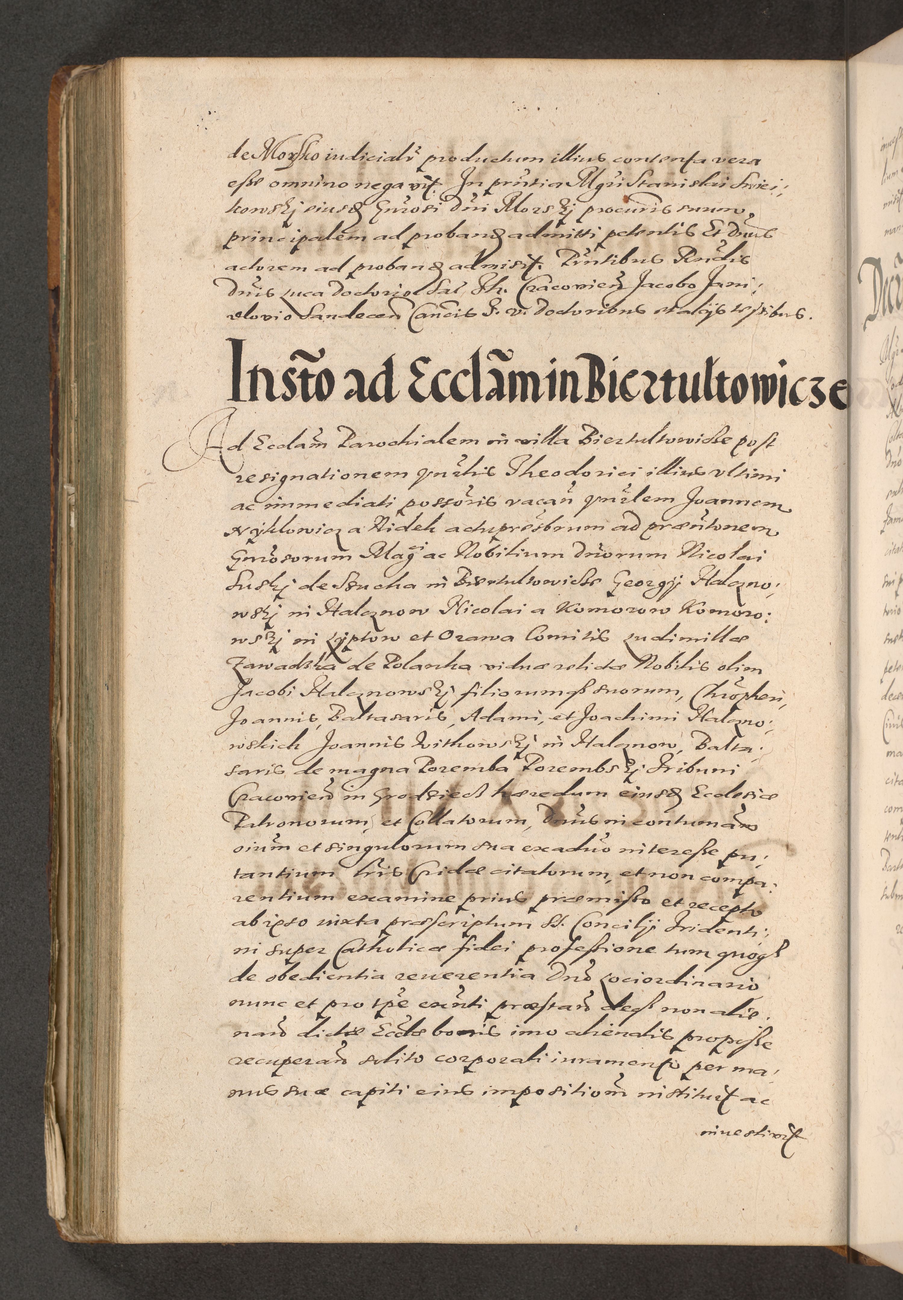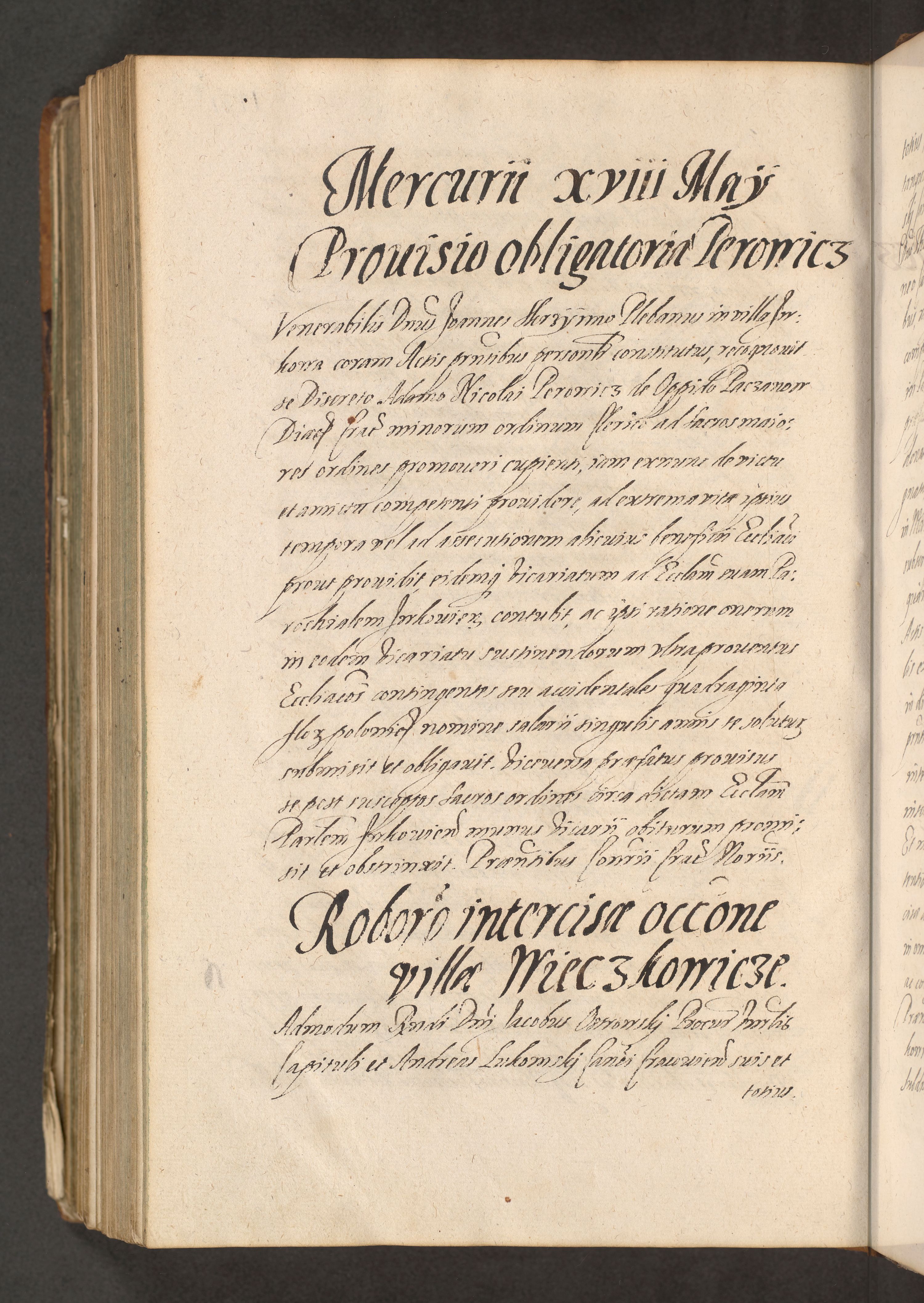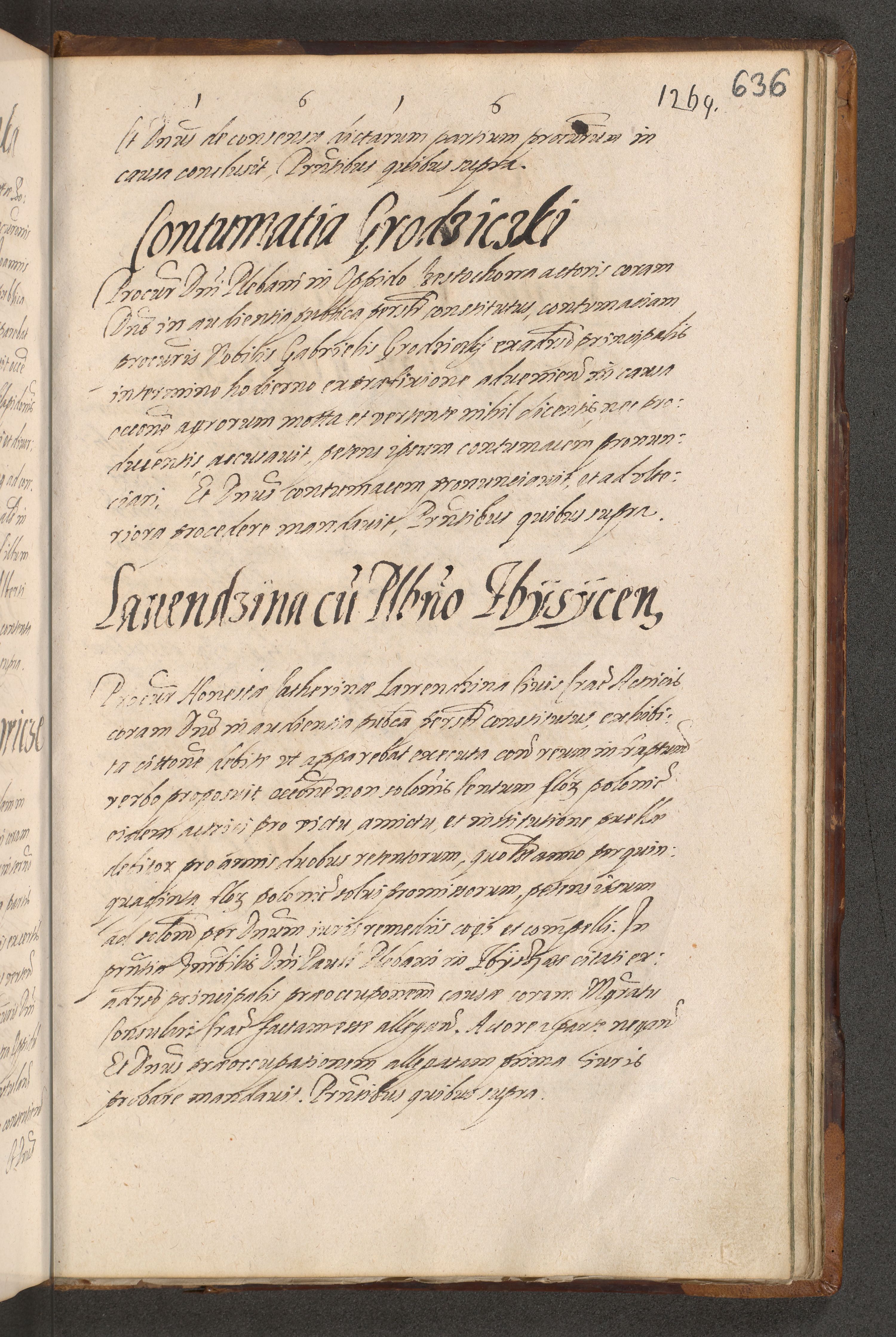 Illustrissimo et Reverendissimo in Christo Patre Domino Domino Petro Tylicki Dei et Apostolice Sedis Gratia Episcopo Cracoviensis Duce Severiensis Acta actorum causarum sententiarum tam interloquutoriarum quam definitivarum decretorum obligationum, quietationum, recognitionum, constitutionum procuratorum etc. etc. coram Admodum Reverendo Domino Thoma Oborski I. V. Doctore Canonico Vicario in Spiritualibus et Officiali generali Cracoviensis in anno Domini Millesimo Sexcentessimo Decimoquarto Cuius Indictio duodecima Pontificus SS. D. N. D. Pauli Divina providentia Papae quinti Anno decimo foeliciter incipiunt