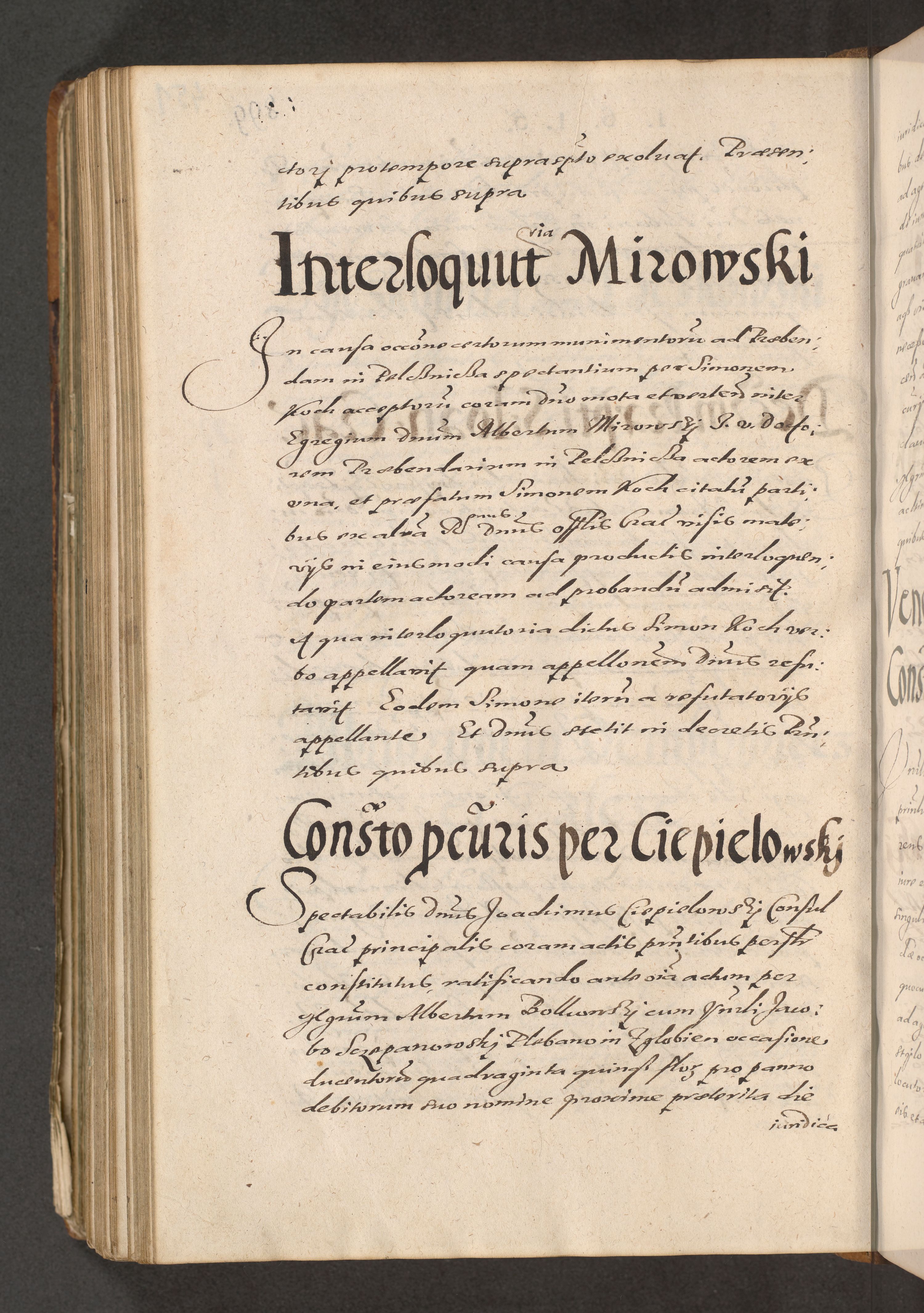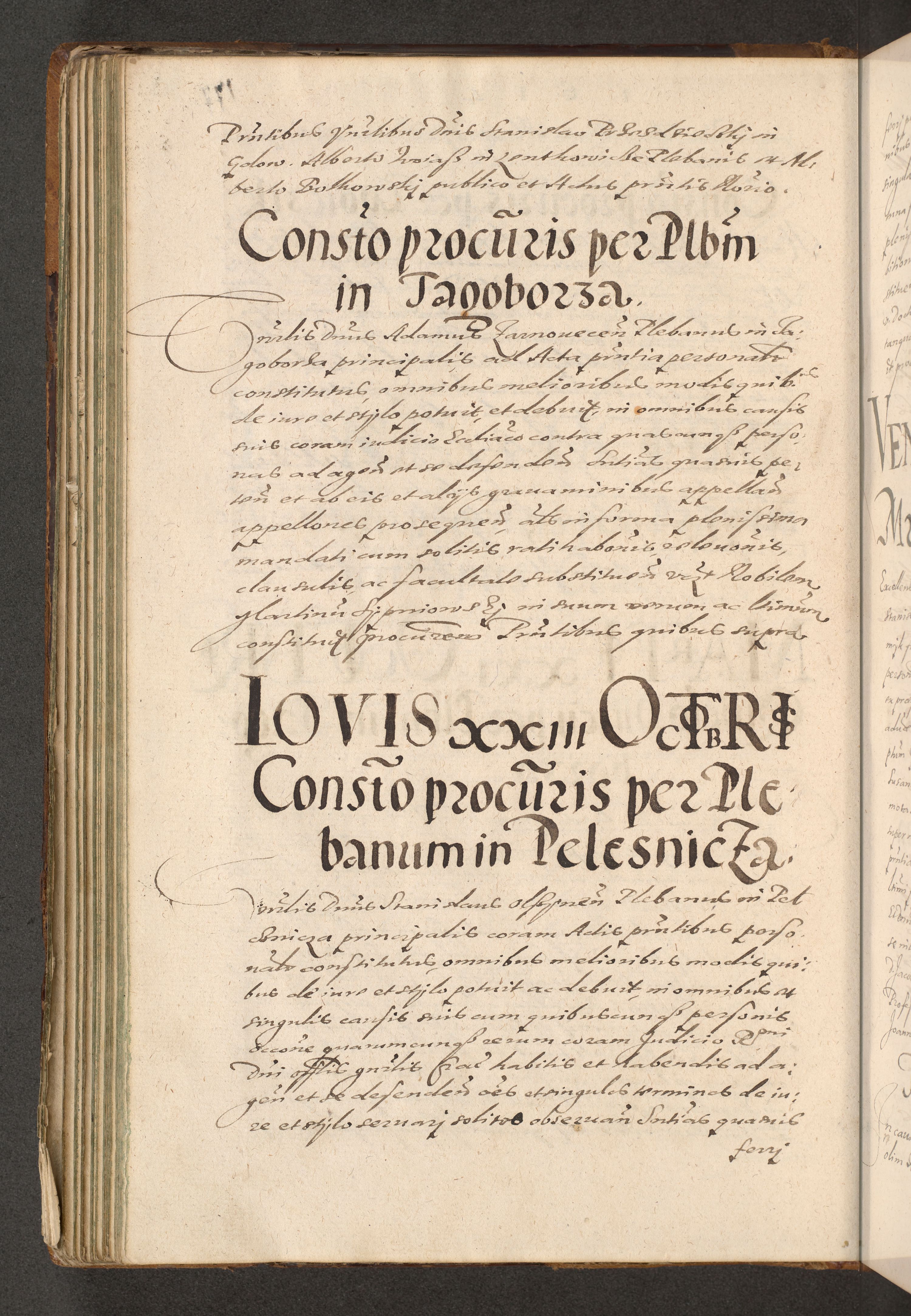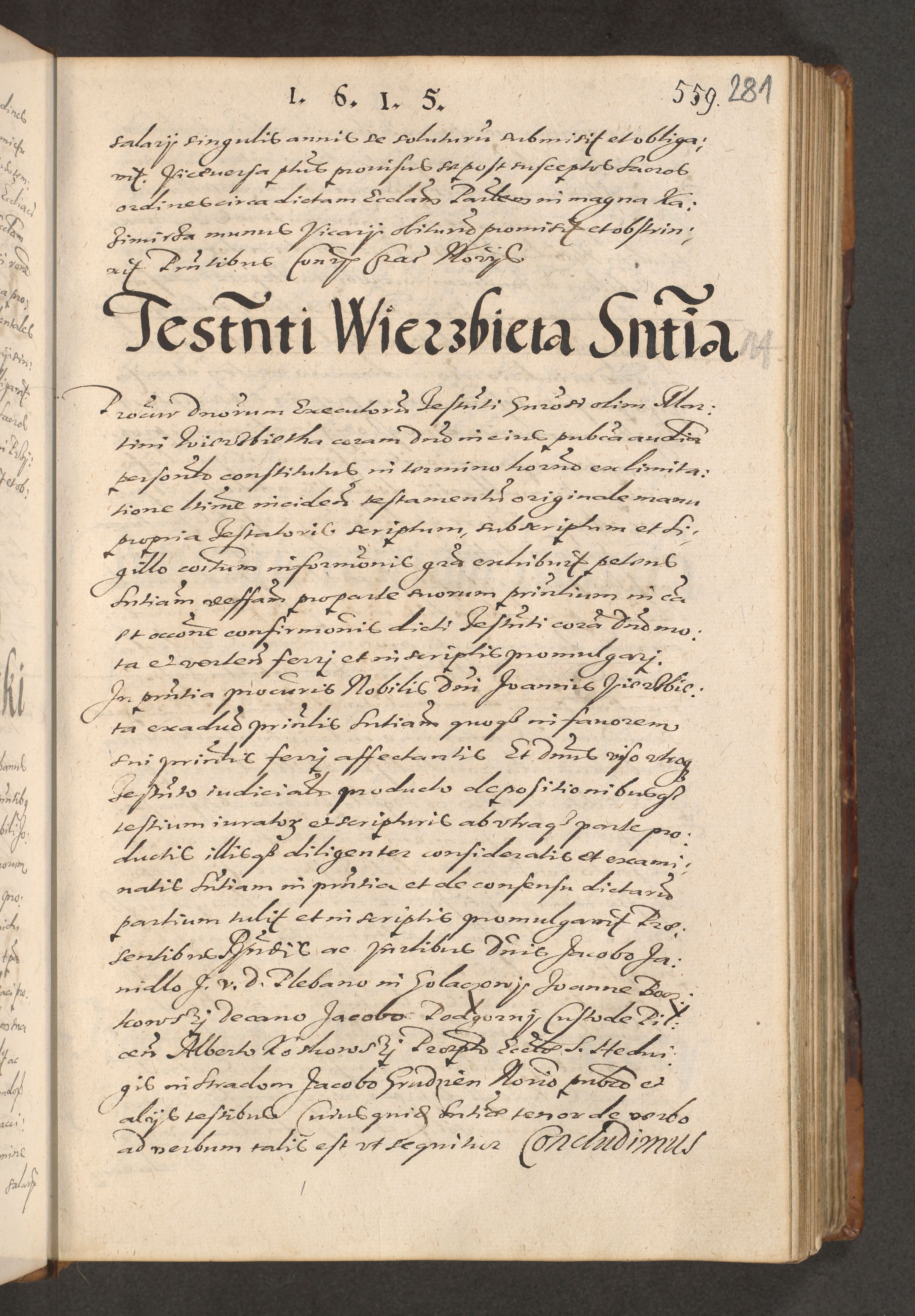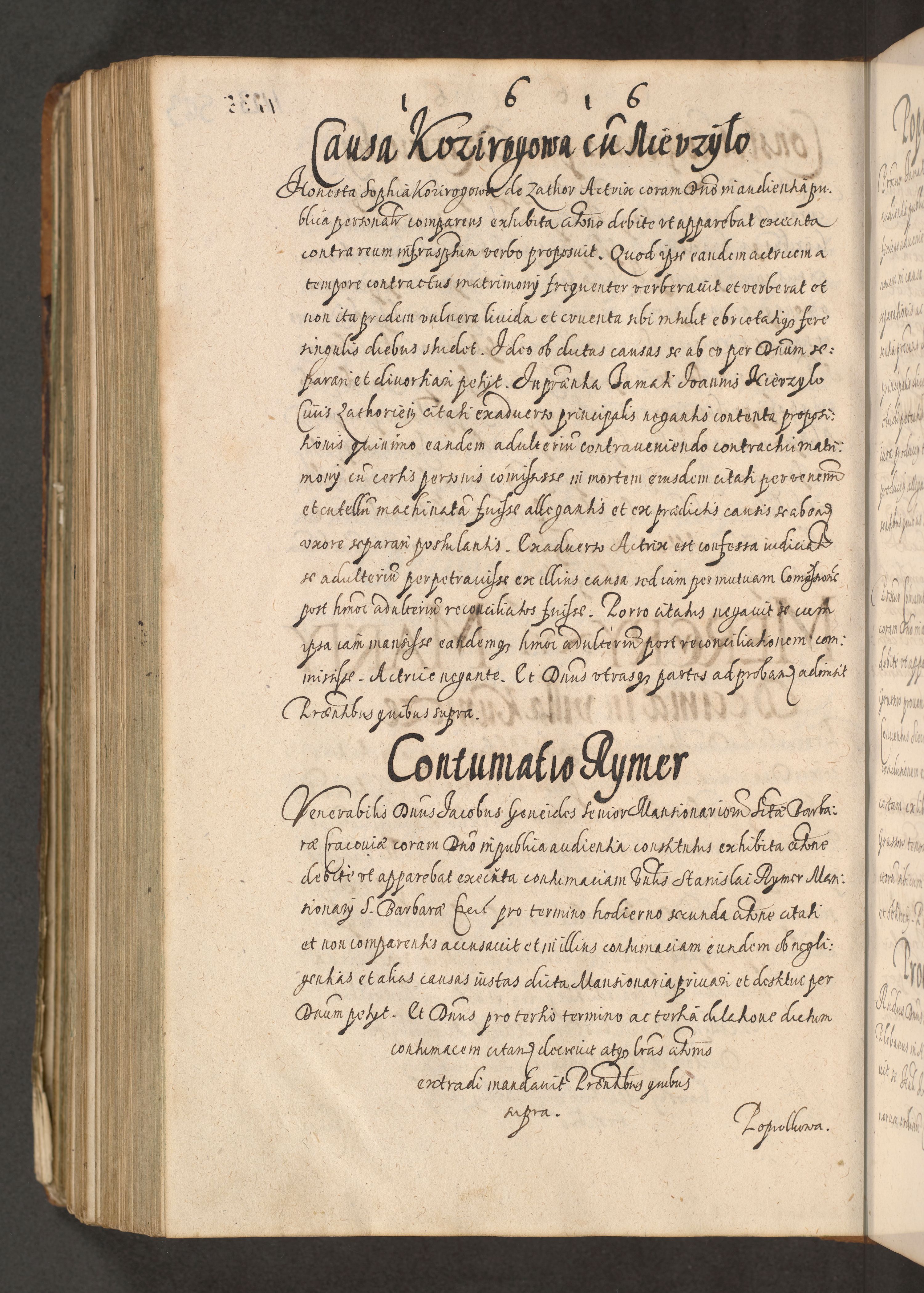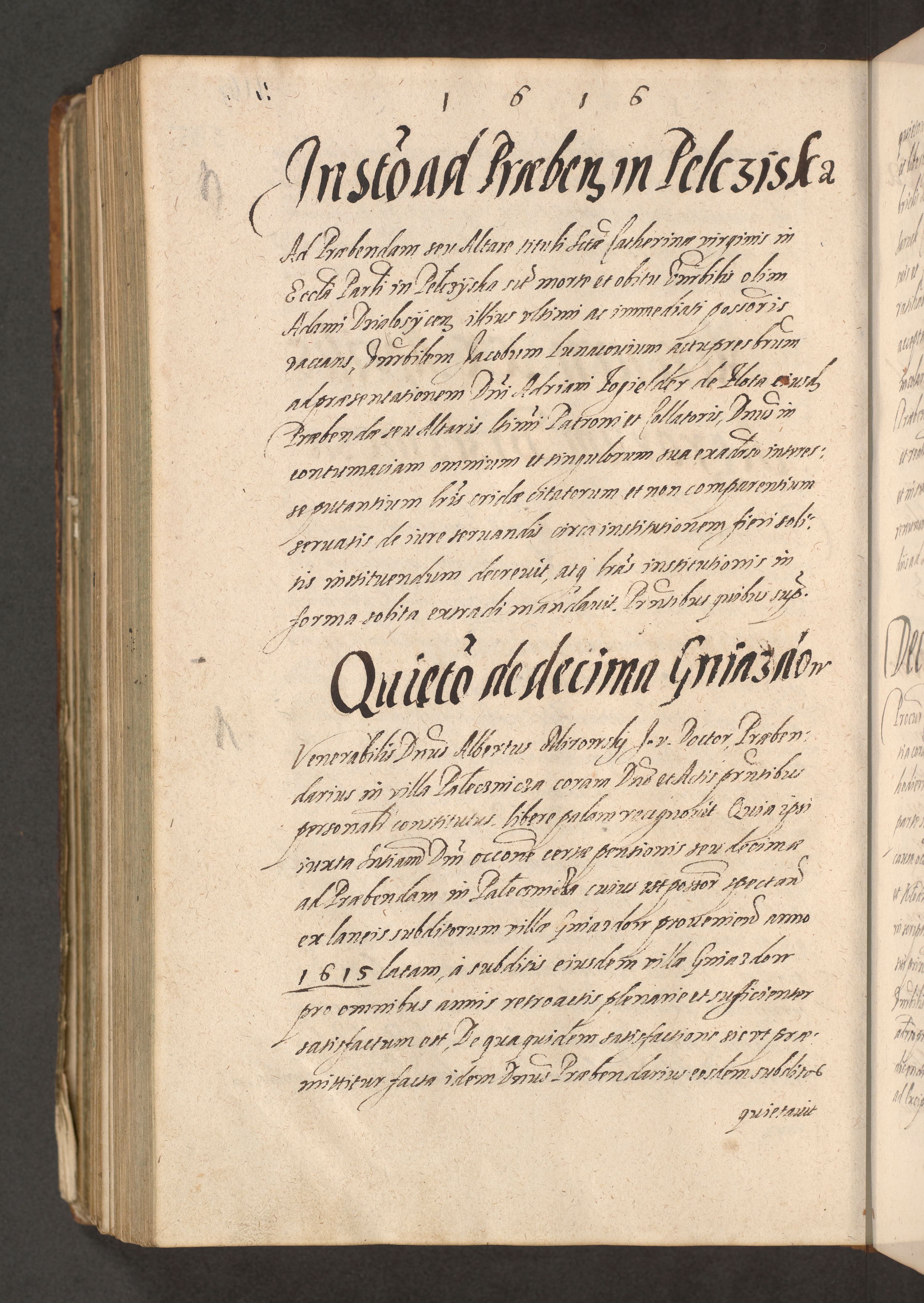 Illustrissimo et Reverendissimo in Christo Patre Domino Domino Petro Tylicki Dei et Apostolice Sedis Gratia Episcopo Cracoviensis Duce Severiensis Acta actorum causarum sententiarum tam interloquutoriarum quam definitivarum decretorum obligationum, quietationum, recognitionum, constitutionum procuratorum etc. etc. coram Admodum Reverendo Domino Thoma Oborski I. V. Doctore Canonico Vicario in Spiritualibus et Officiali generali Cracoviensis in anno Domini Millesimo Sexcentessimo Decimoquarto Cuius Indictio duodecima Pontificus SS. D. N. D. Pauli Divina providentia Papae quinti Anno decimo foeliciter incipiunt