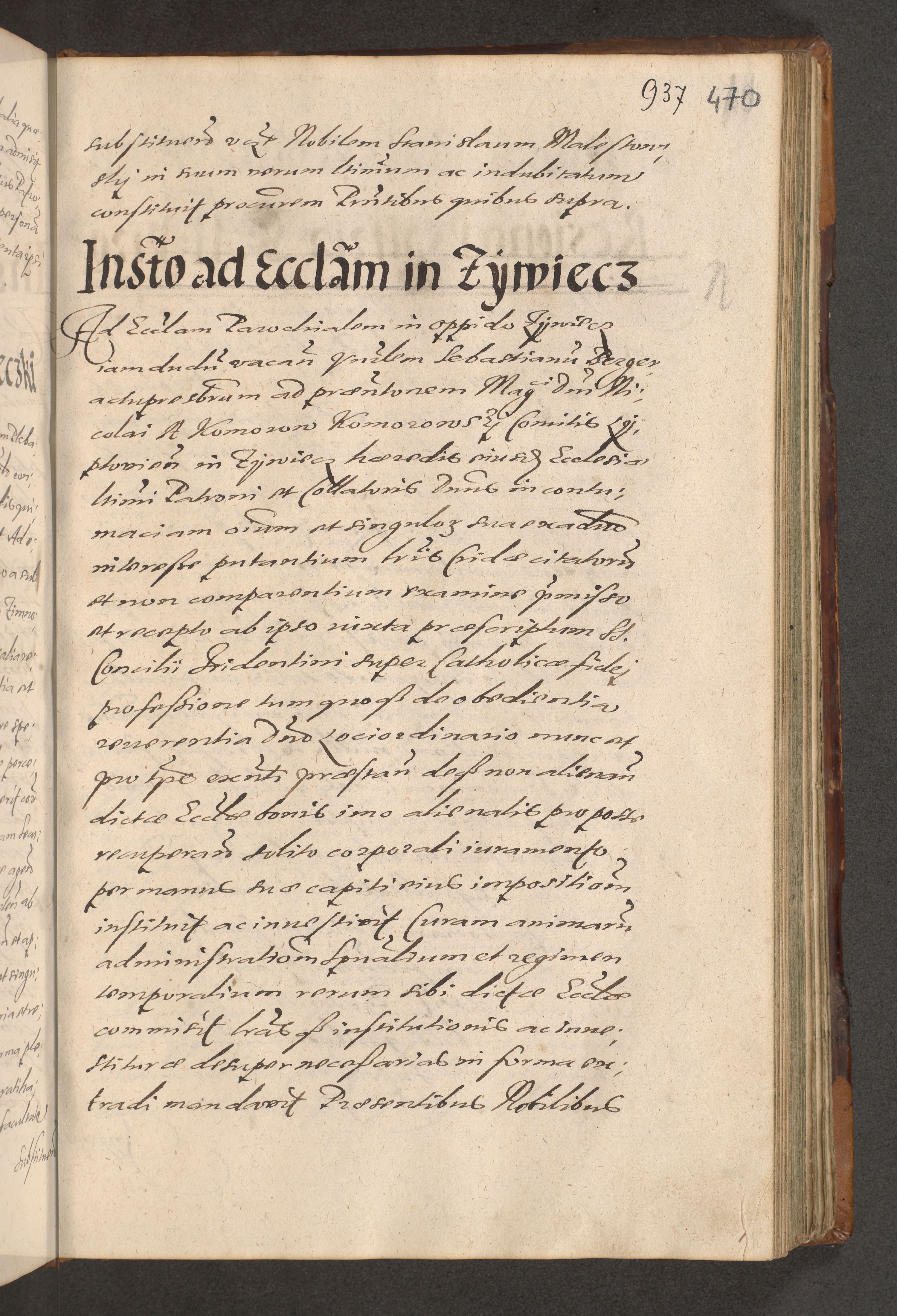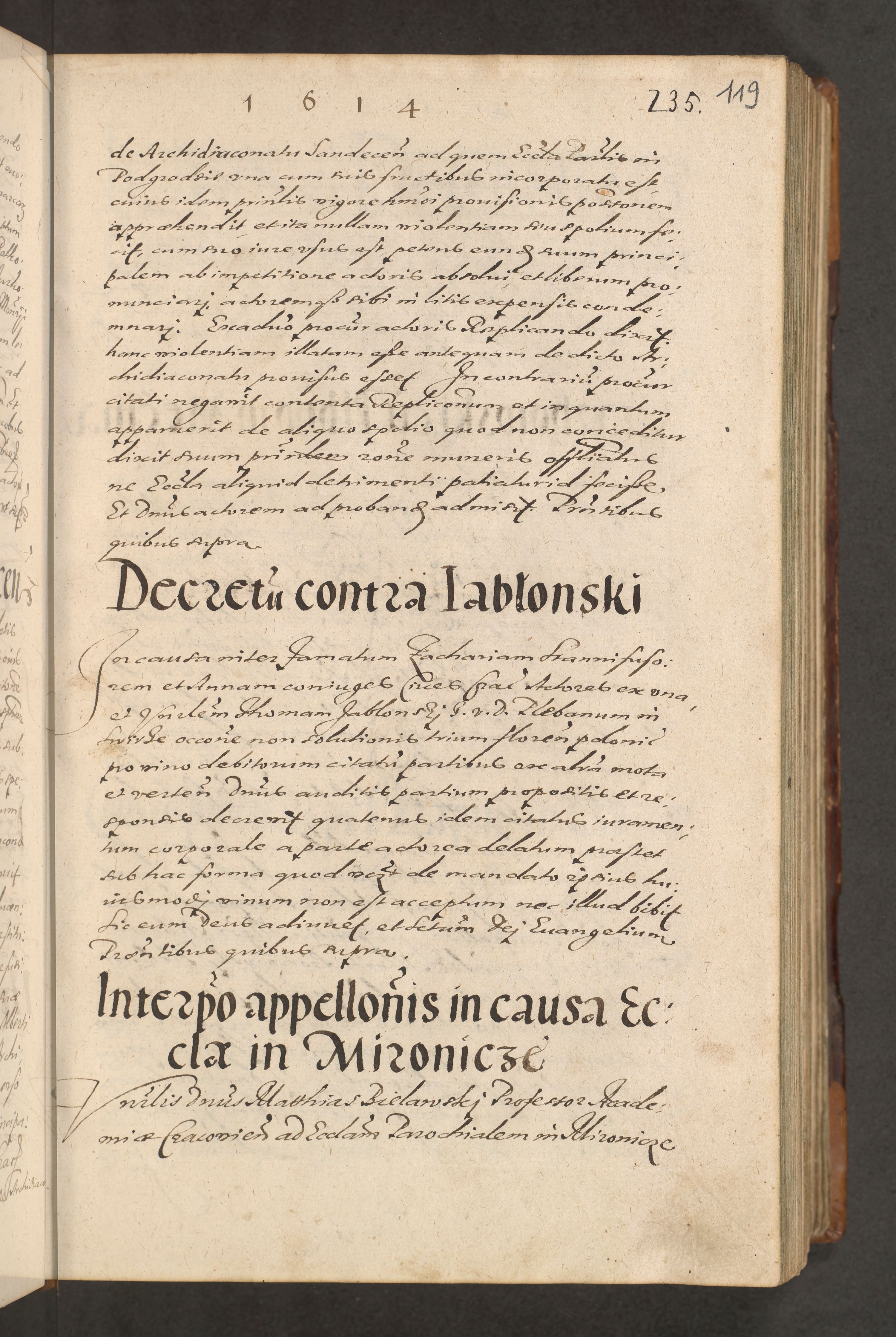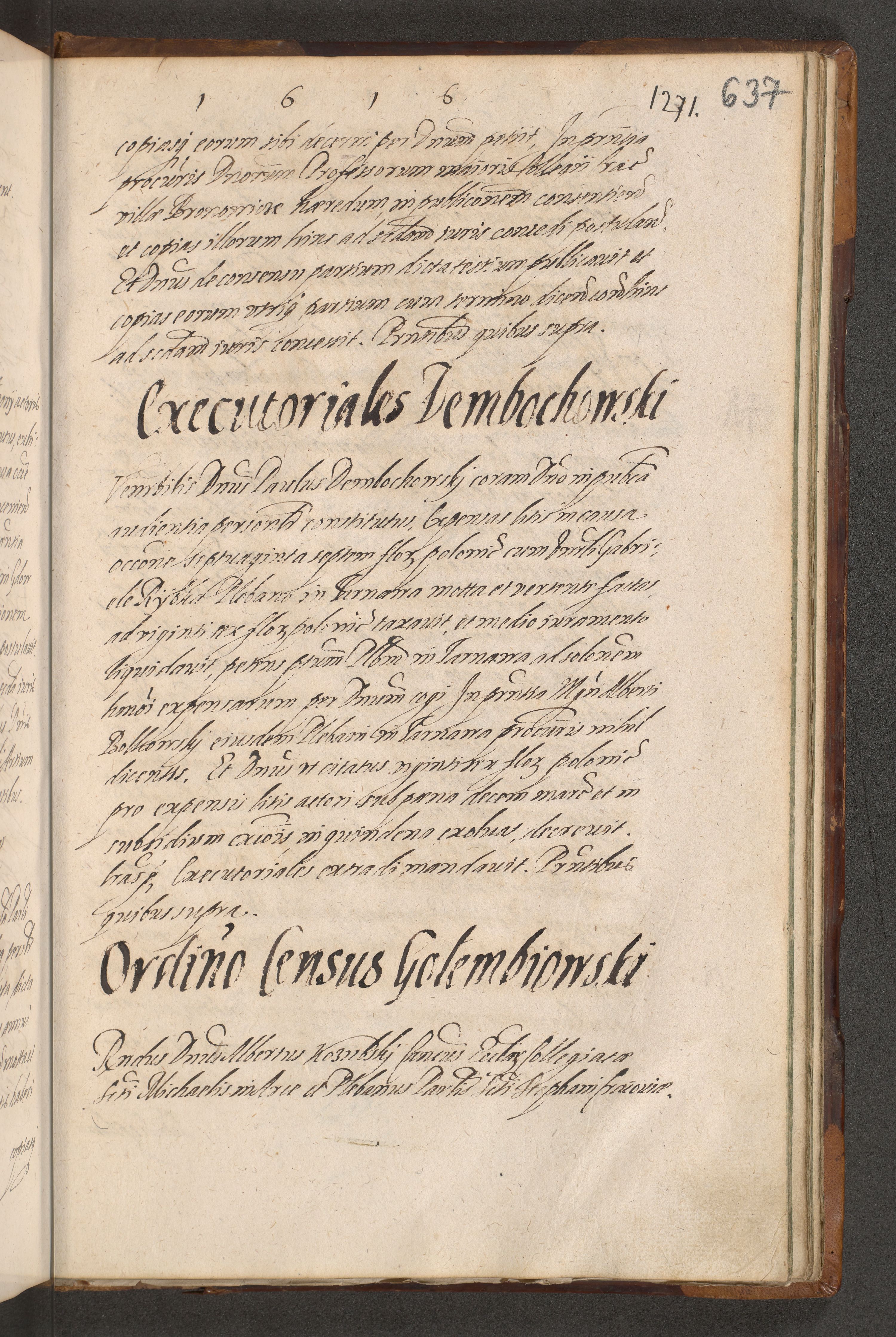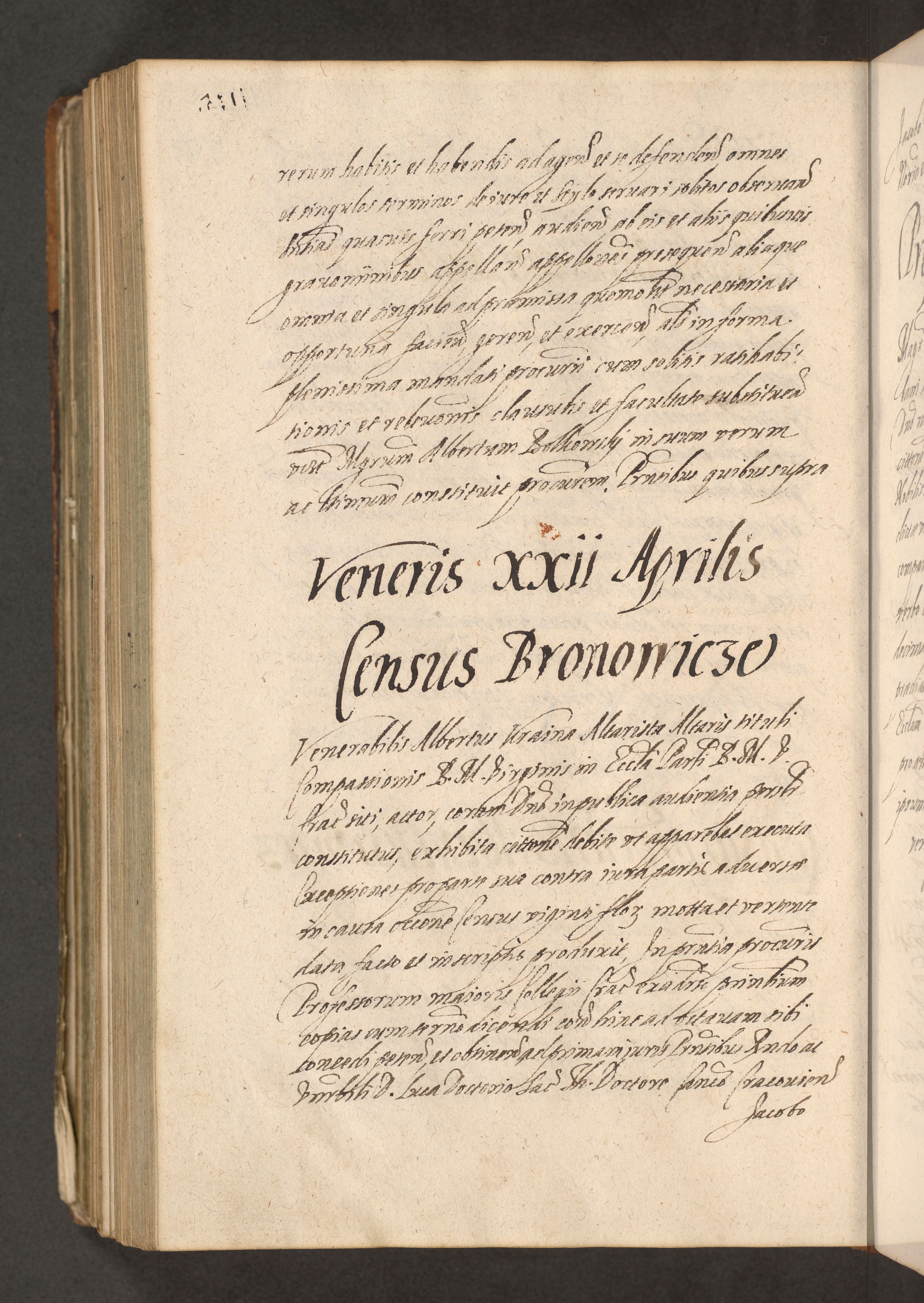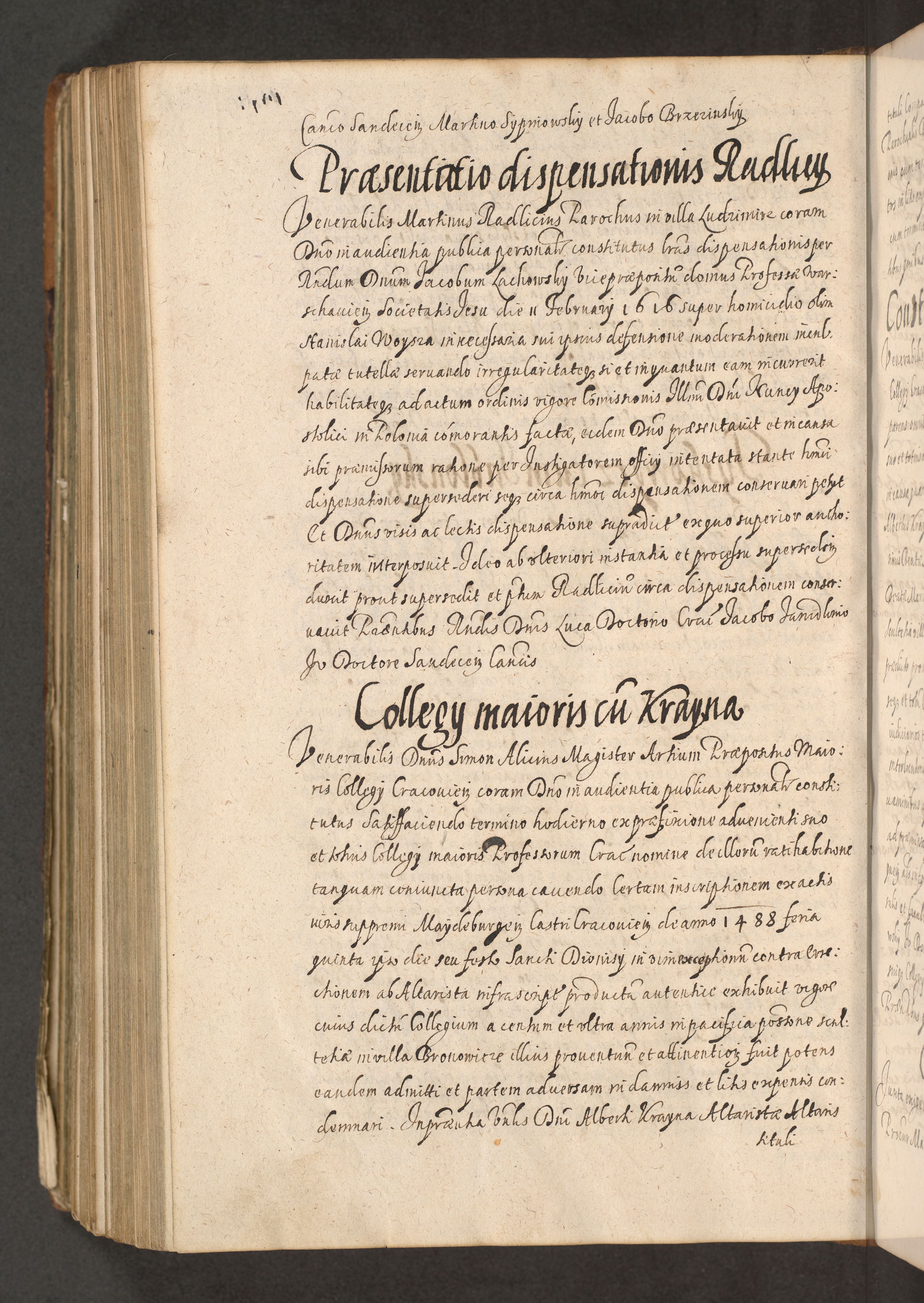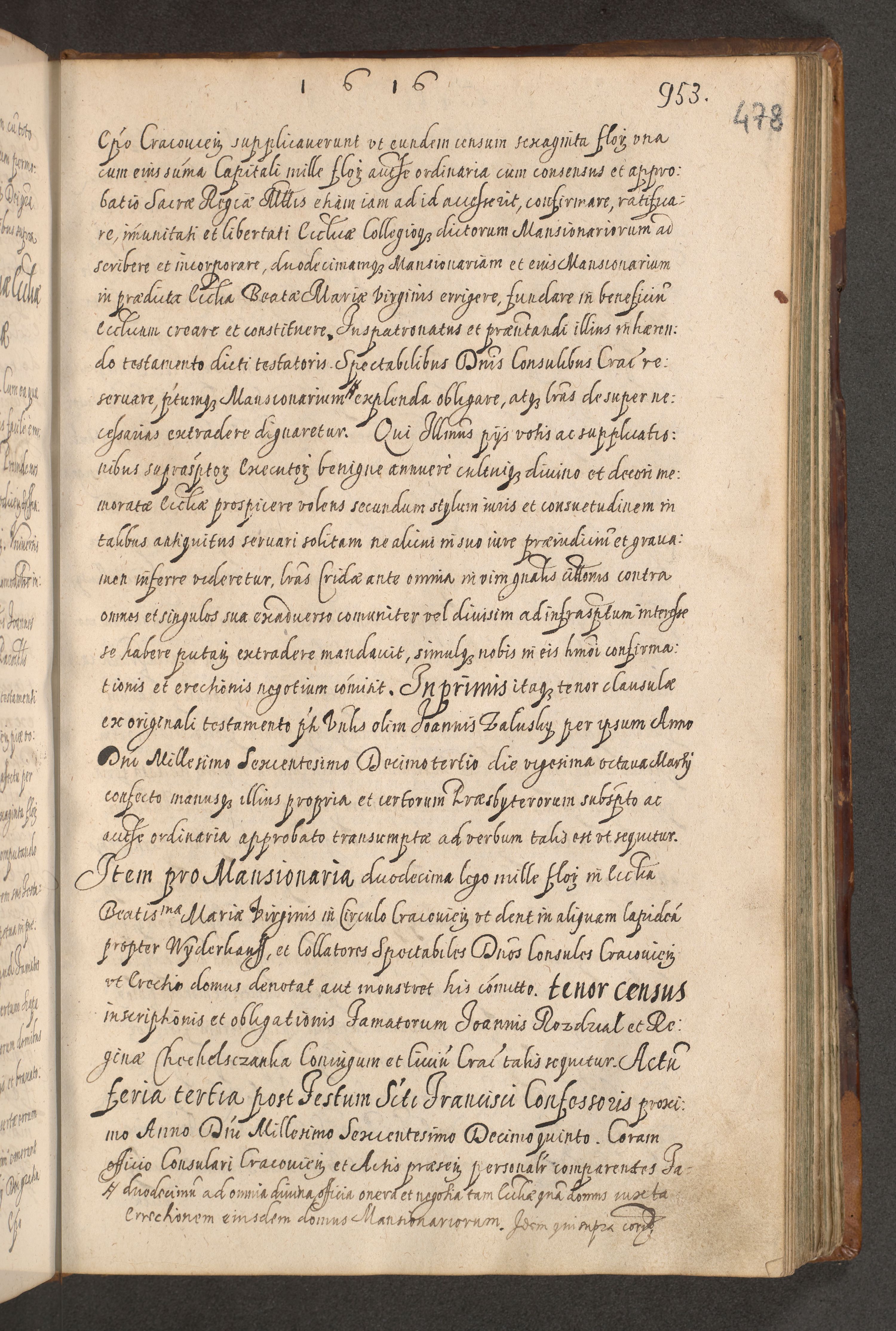Illustrissimo et Reverendissimo in Christo Patre Domino Domino Petro Tylicki Dei et Apostolice Sedis Gratia Episcopo Cracoviensis Duce Severiensis Acta actorum causarum sententiarum tam interloquutoriarum quam definitivarum decretorum obligationum, quietationum, recognitionum, constitutionum procuratorum etc. etc. coram Admodum Reverendo Domino Thoma Oborski I. V. Doctore Canonico Vicario in Spiritualibus et Officiali generali Cracoviensis in anno Domini Millesimo Sexcentessimo Decimoquarto Cuius Indictio duodecima Pontificus SS. D. N. D. Pauli Divina providentia Papae quinti Anno decimo foeliciter incipiunt