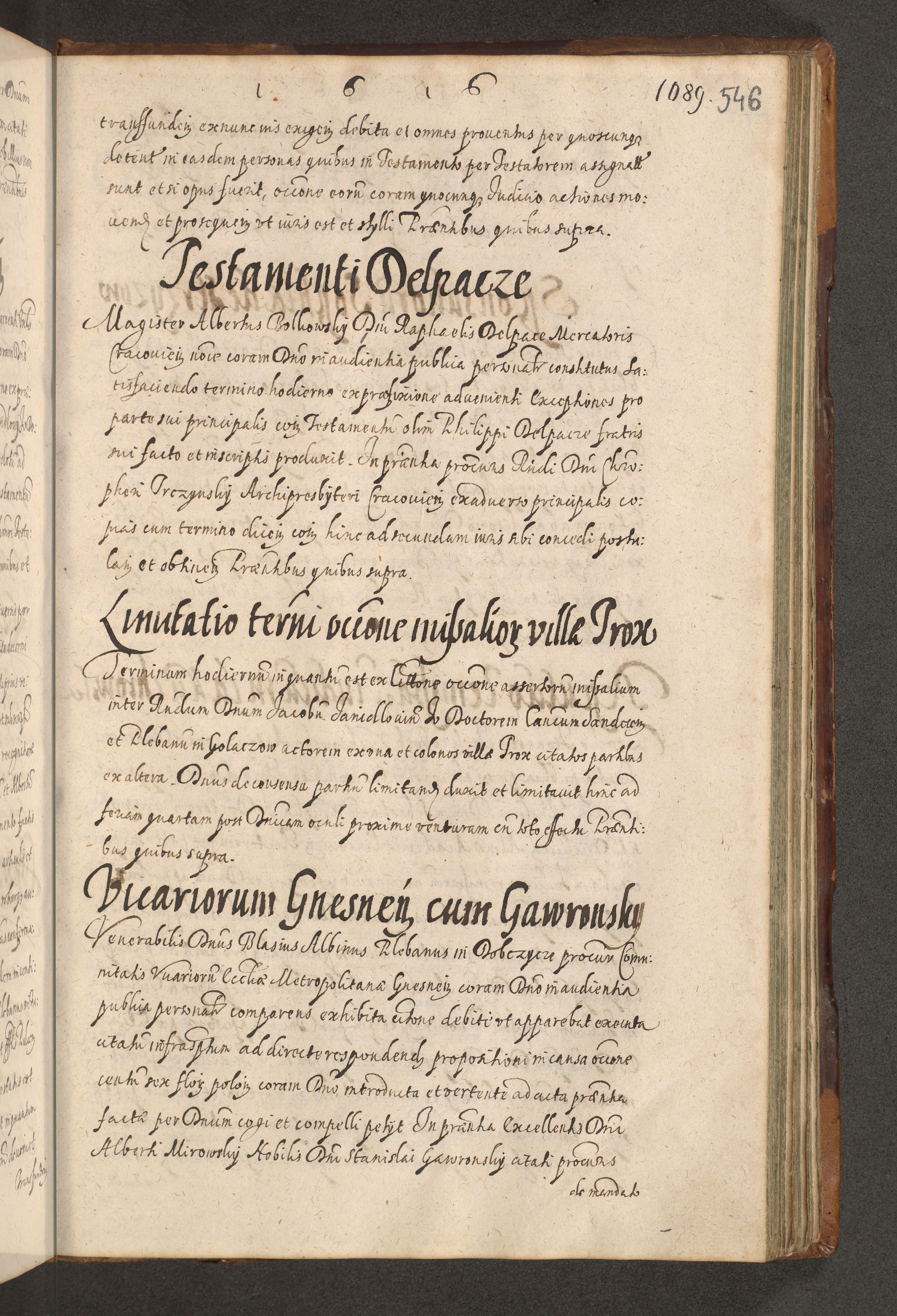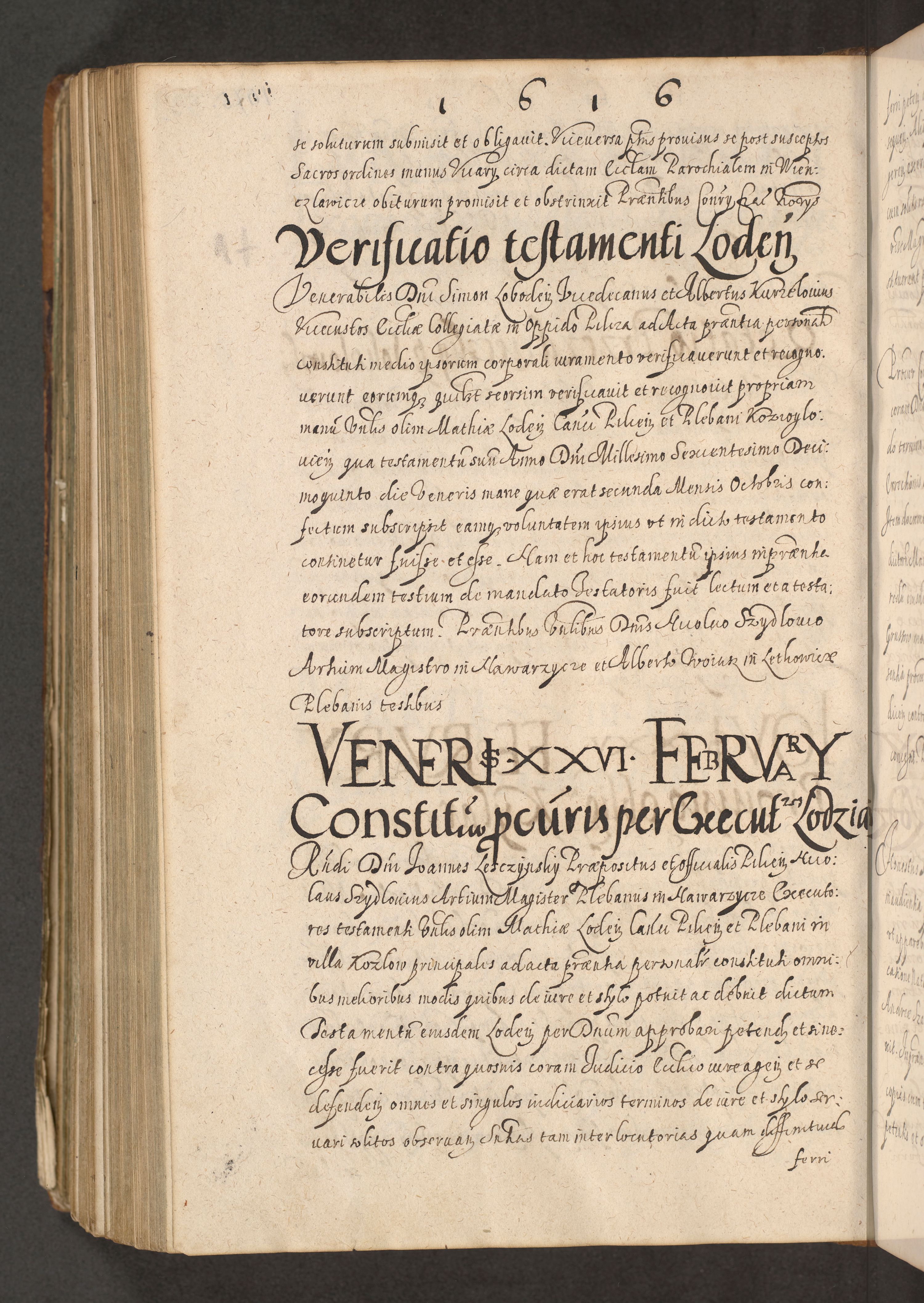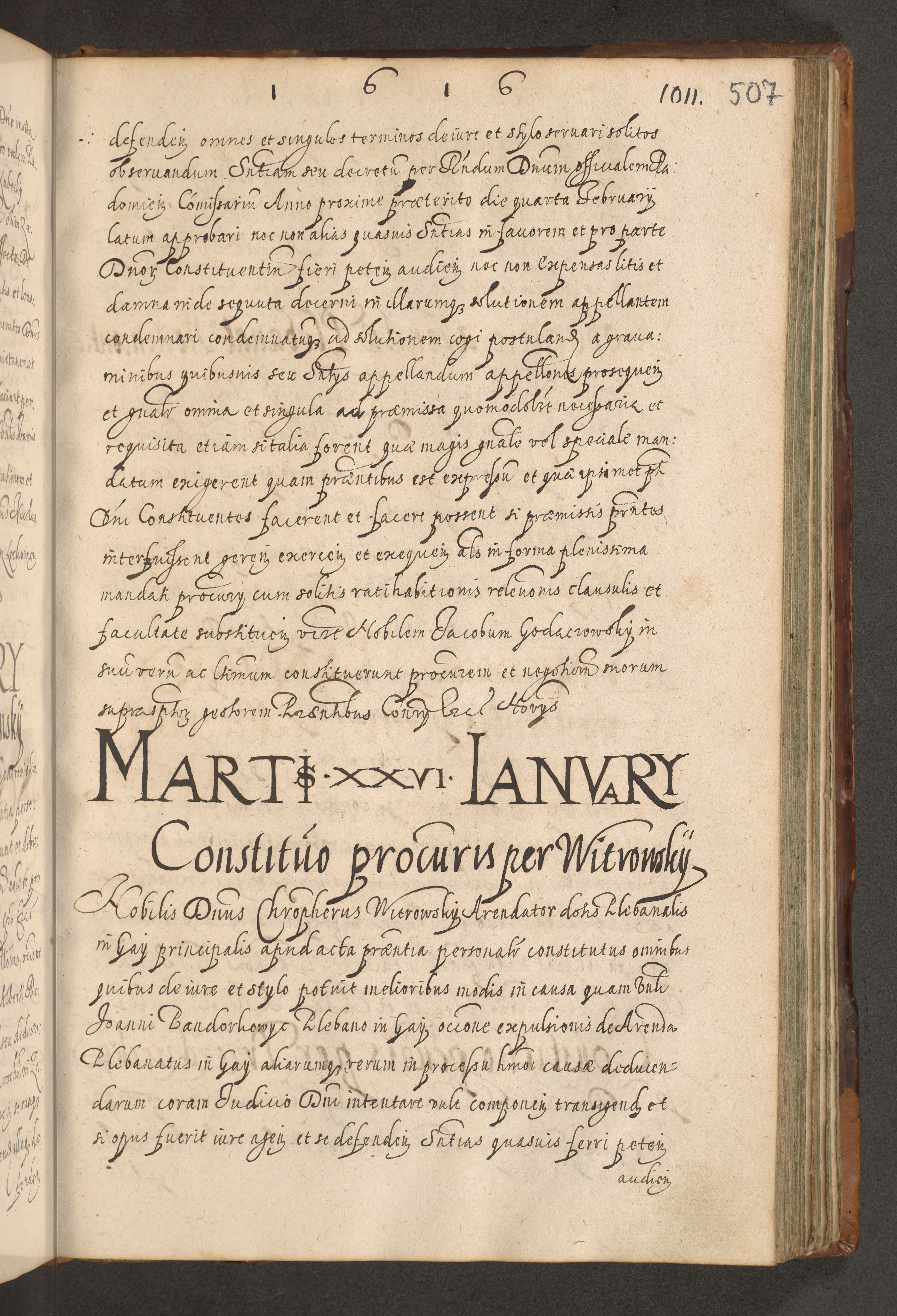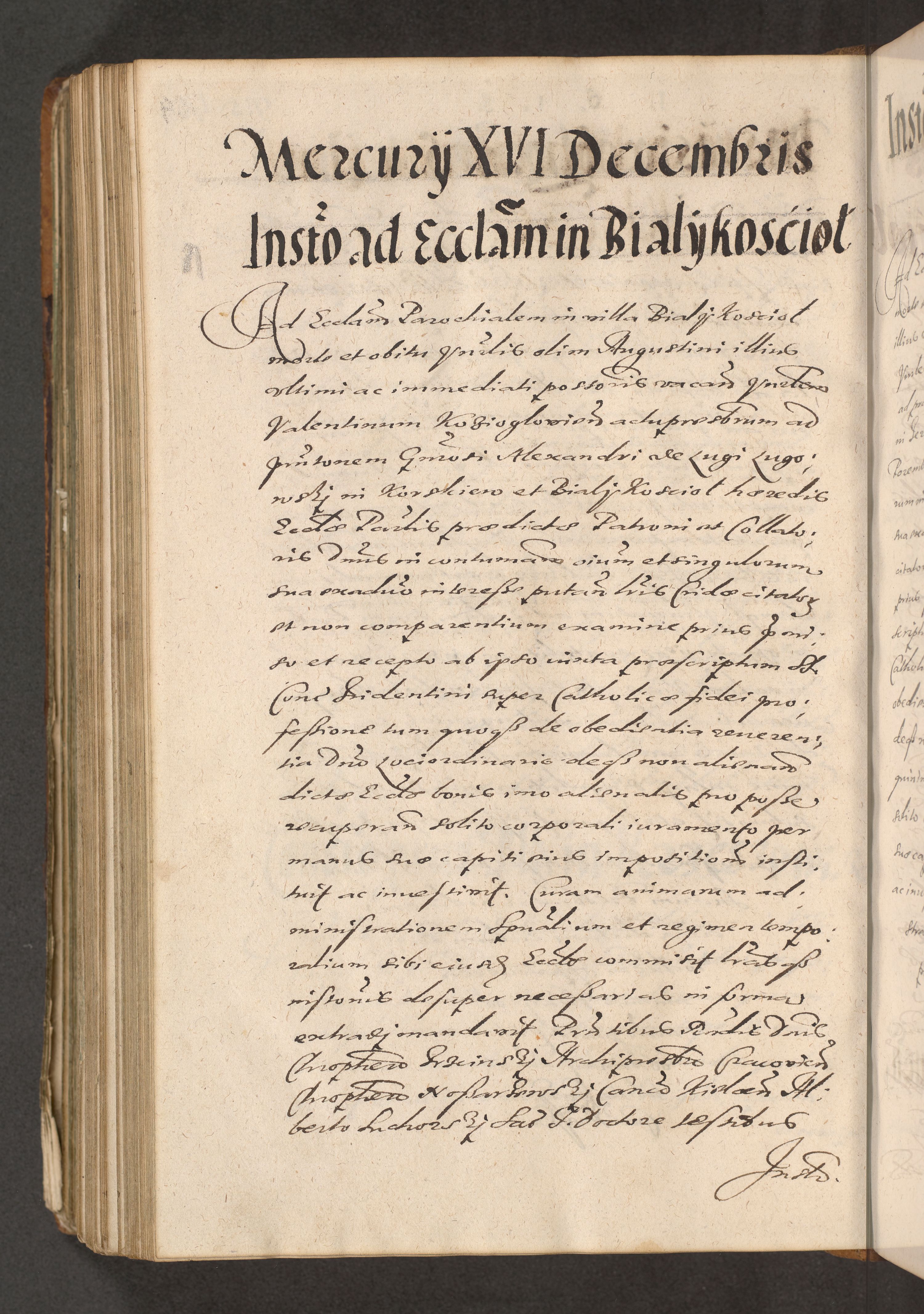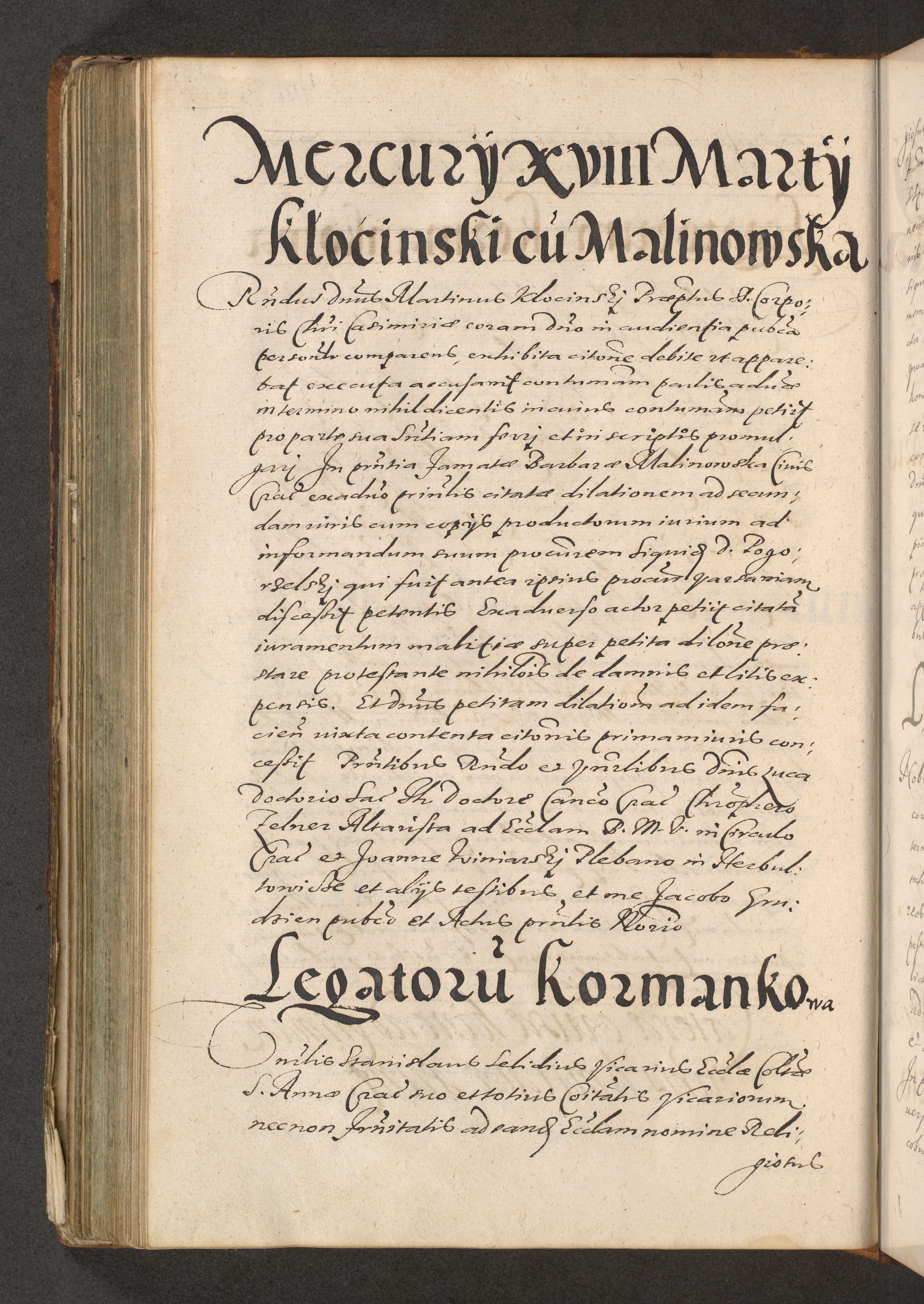 Illustrissimo et Reverendissimo in Christo Patre Domino Domino Petro Tylicki Dei et Apostolice Sedis Gratia Episcopo Cracoviensis Duce Severiensis Acta actorum causarum sententiarum tam interloquutoriarum quam definitivarum decretorum obligationum, quietationum, recognitionum, constitutionum procuratorum etc. etc. coram Admodum Reverendo Domino Thoma Oborski I. V. Doctore Canonico Vicario in Spiritualibus et Officiali generali Cracoviensis in anno Domini Millesimo Sexcentessimo Decimoquarto Cuius Indictio duodecima Pontificus SS. D. N. D. Pauli Divina providentia Papae quinti Anno decimo foeliciter incipiunt