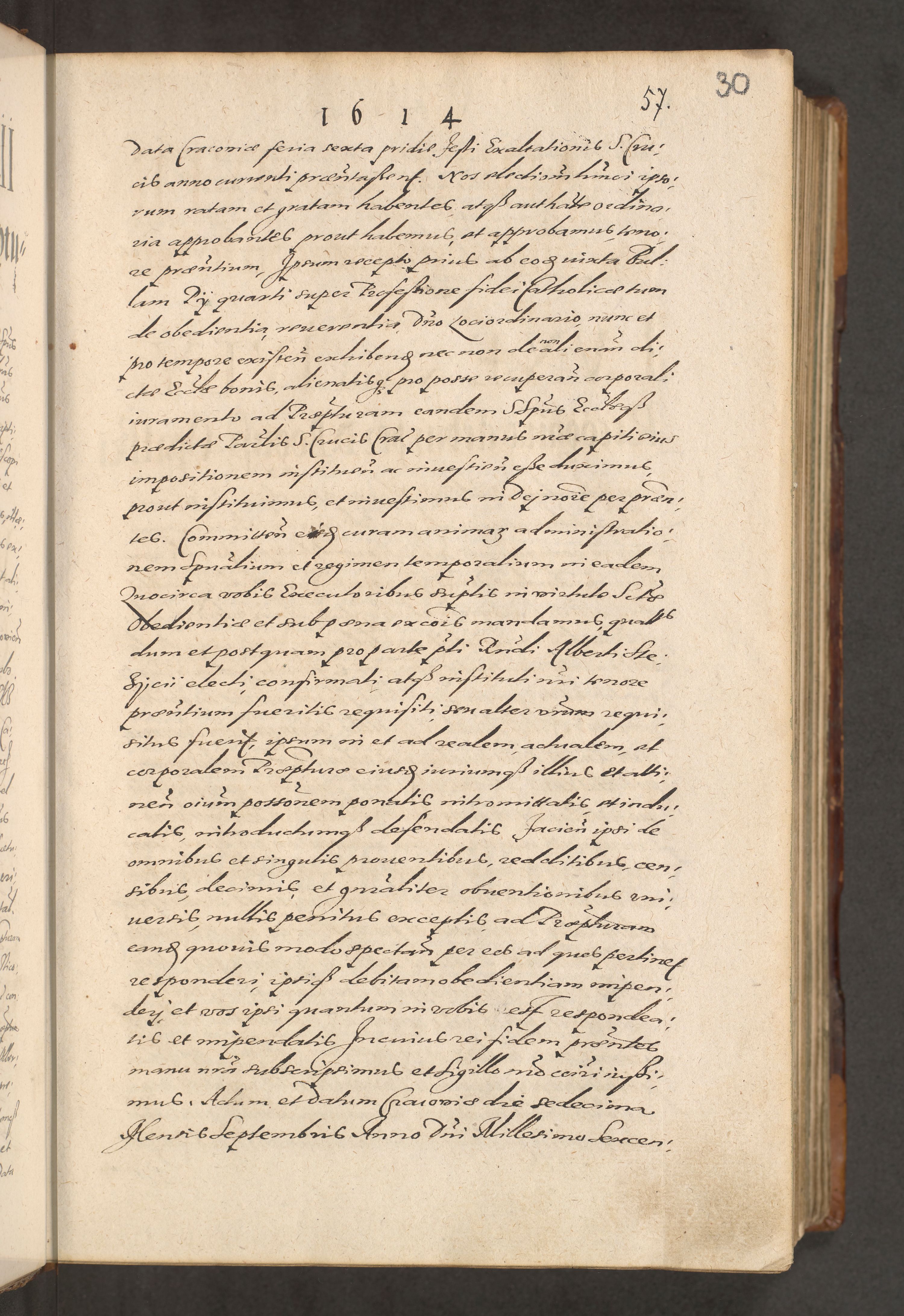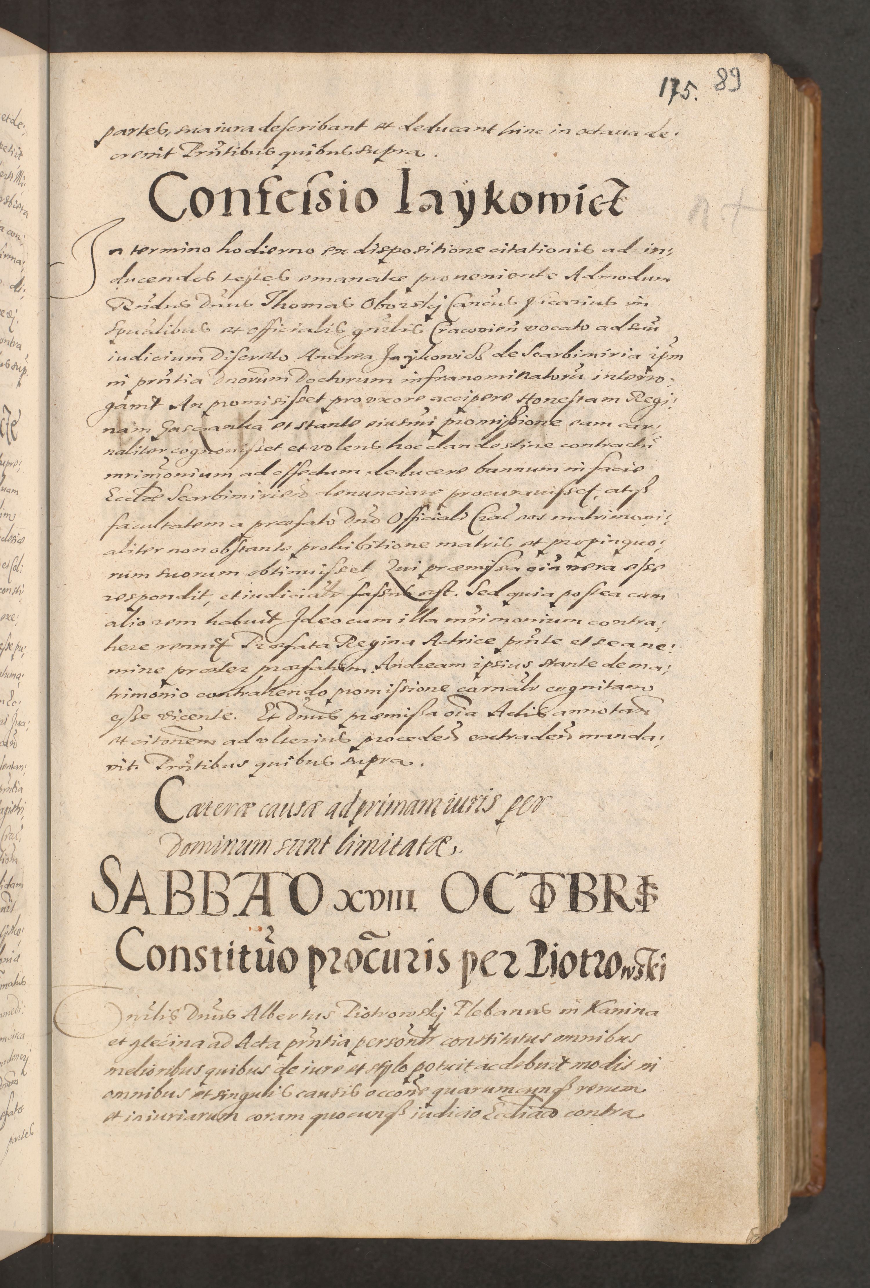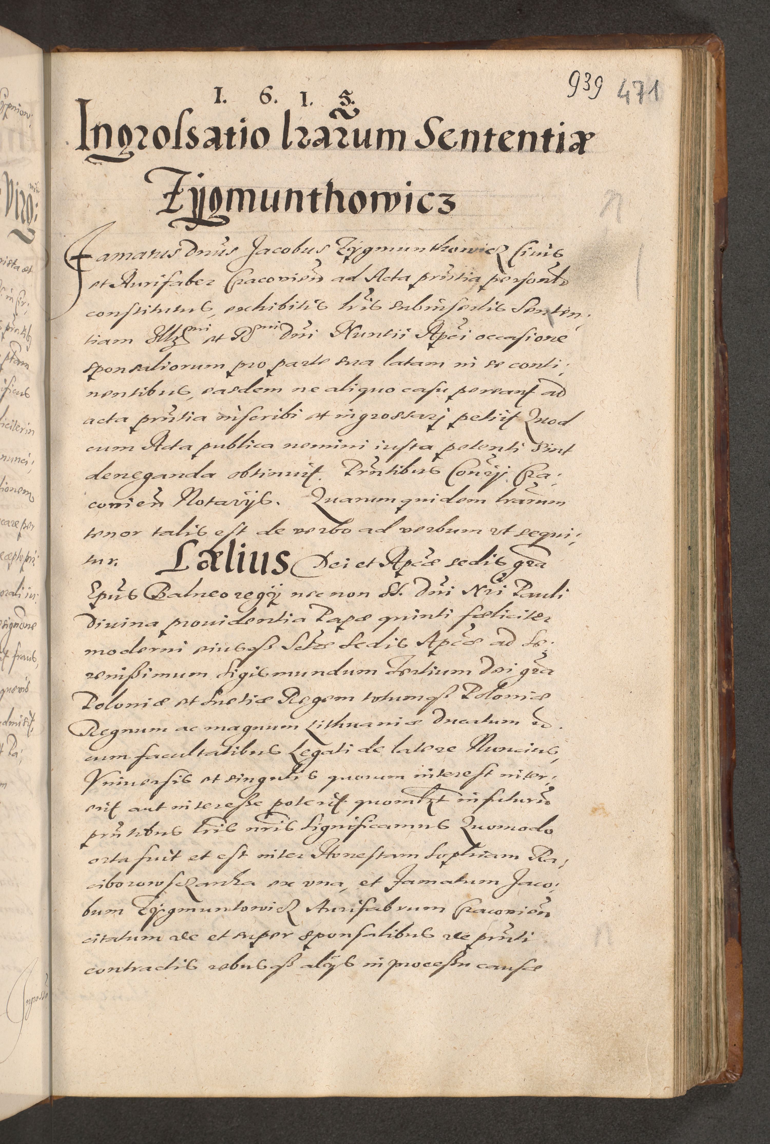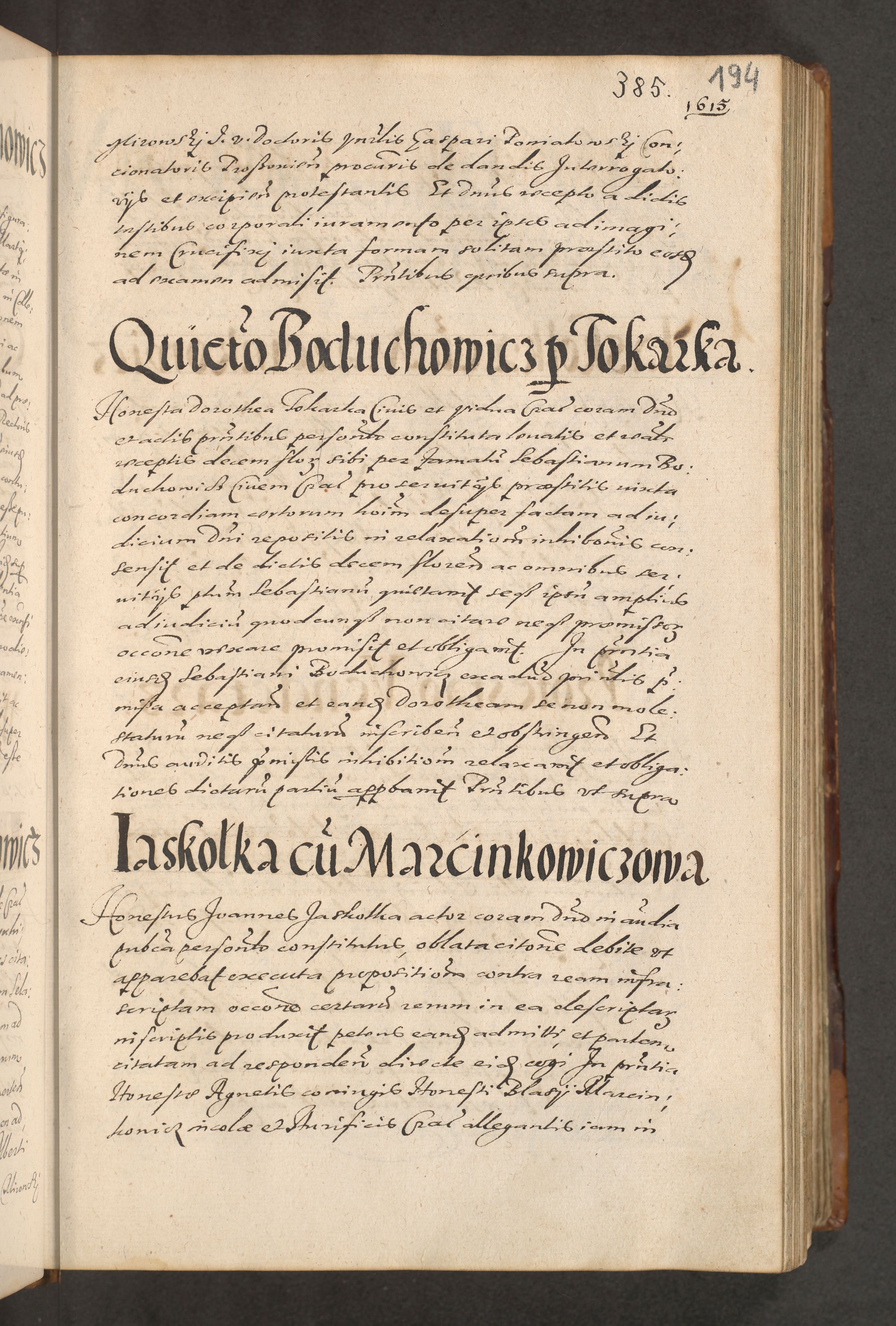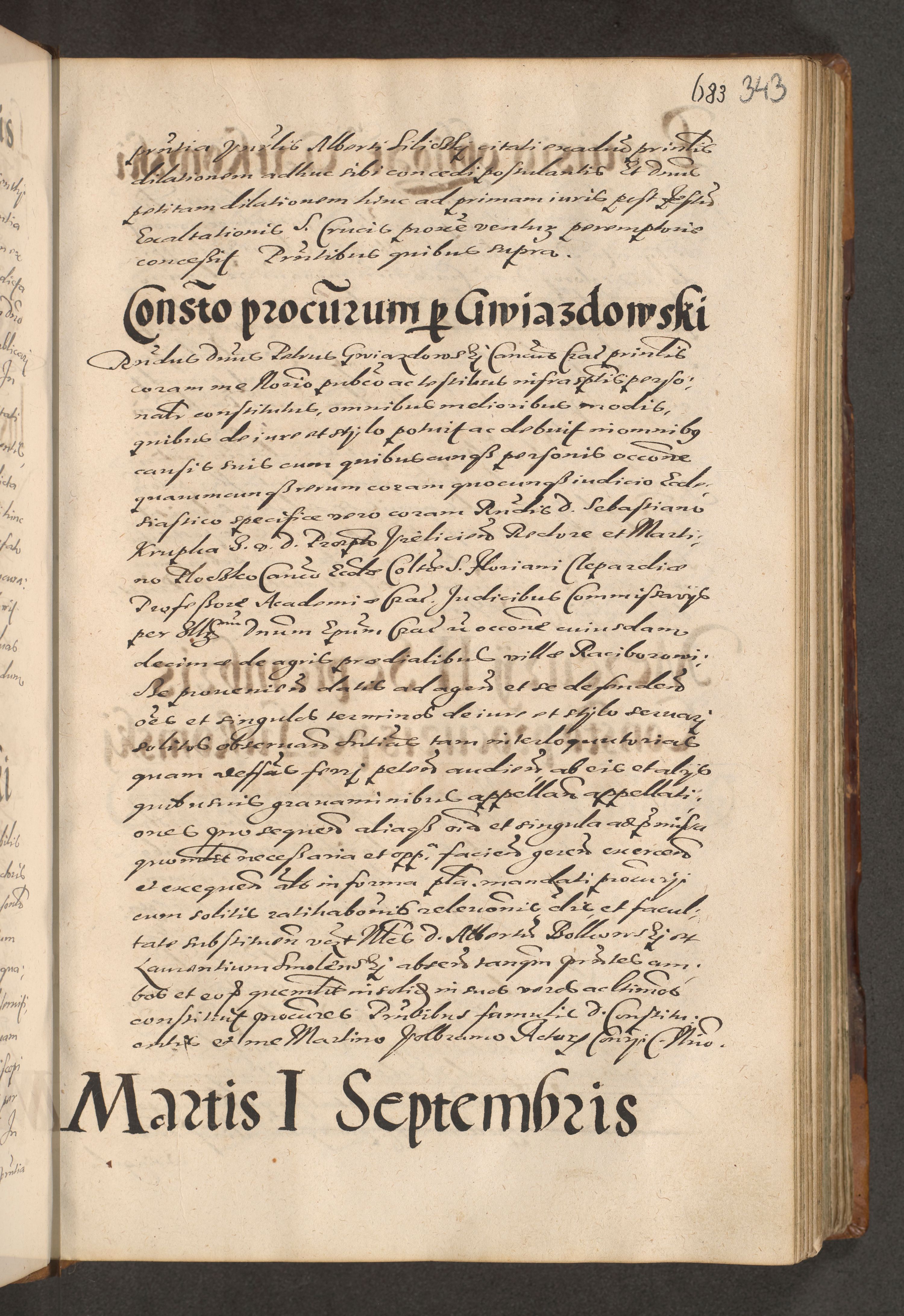 Illustrissimo et Reverendissimo in Christo Patre Domino Domino Petro Tylicki Dei et Apostolice Sedis Gratia Episcopo Cracoviensis Duce Severiensis Acta actorum causarum sententiarum tam interloquutoriarum quam definitivarum decretorum obligationum, quietationum, recognitionum, constitutionum procuratorum etc. etc. coram Admodum Reverendo Domino Thoma Oborski I. V. Doctore Canonico Vicario in Spiritualibus et Officiali generali Cracoviensis in anno Domini Millesimo Sexcentessimo Decimoquarto Cuius Indictio duodecima Pontificus SS. D. N. D. Pauli Divina providentia Papae quinti Anno decimo foeliciter incipiunt