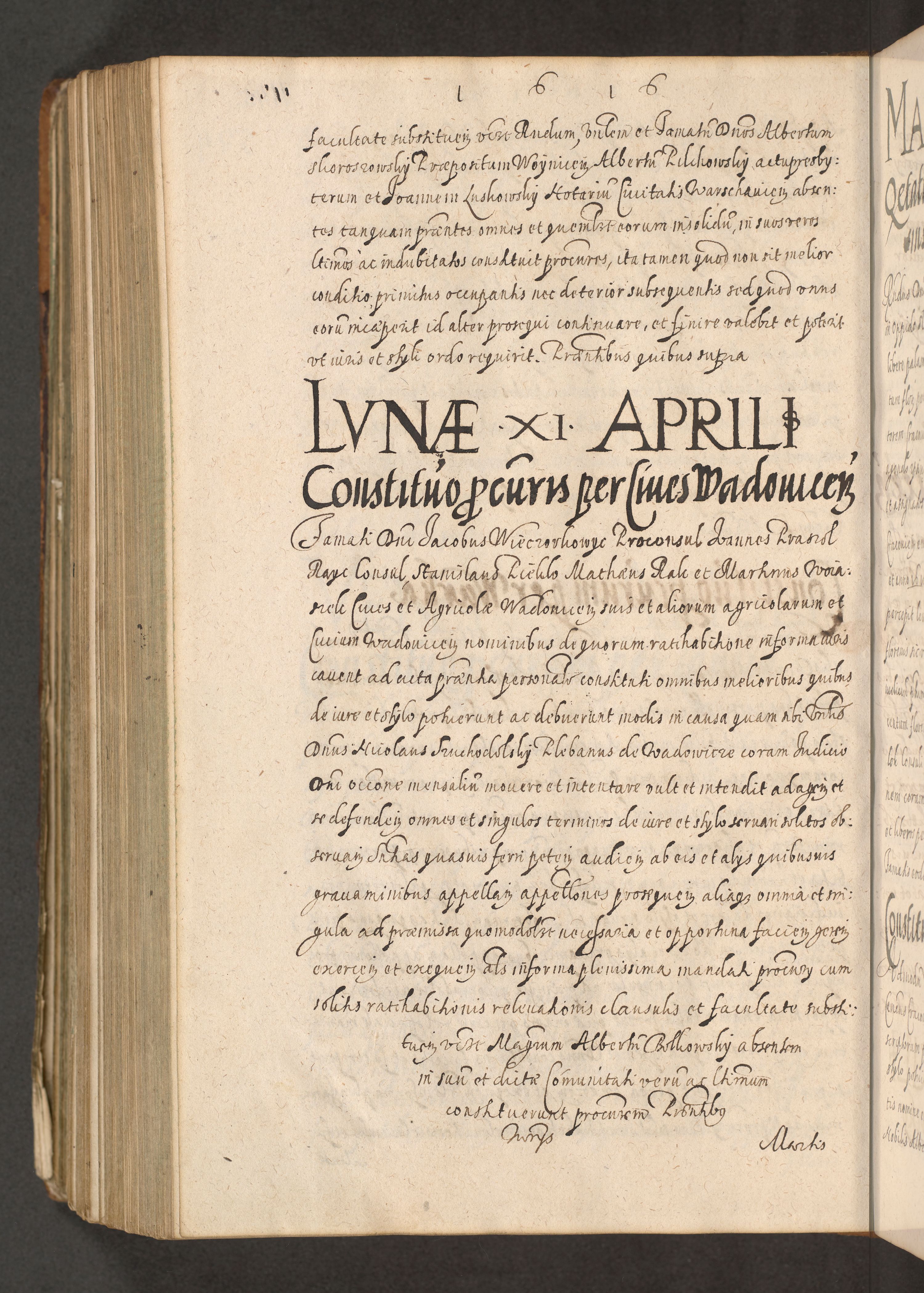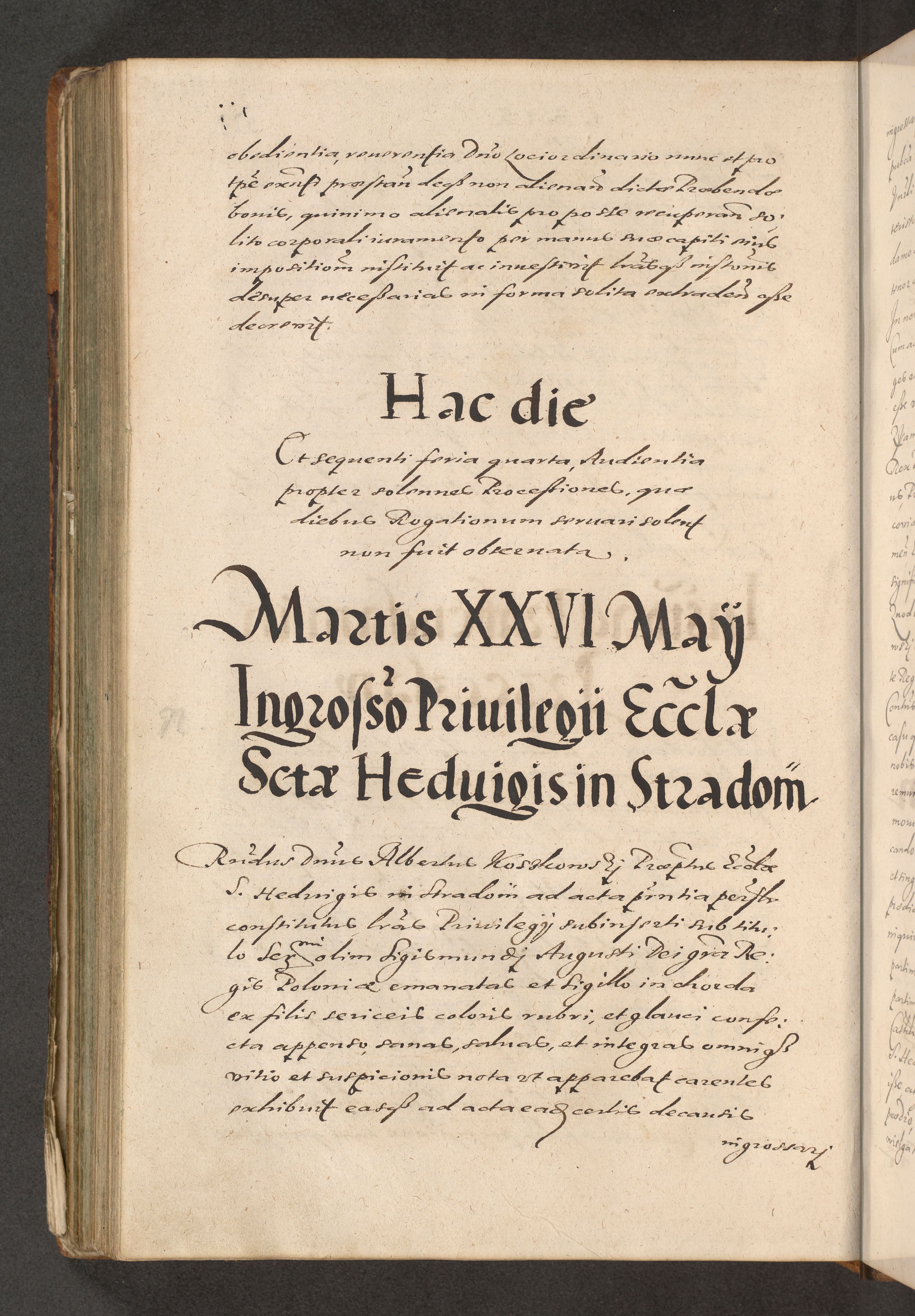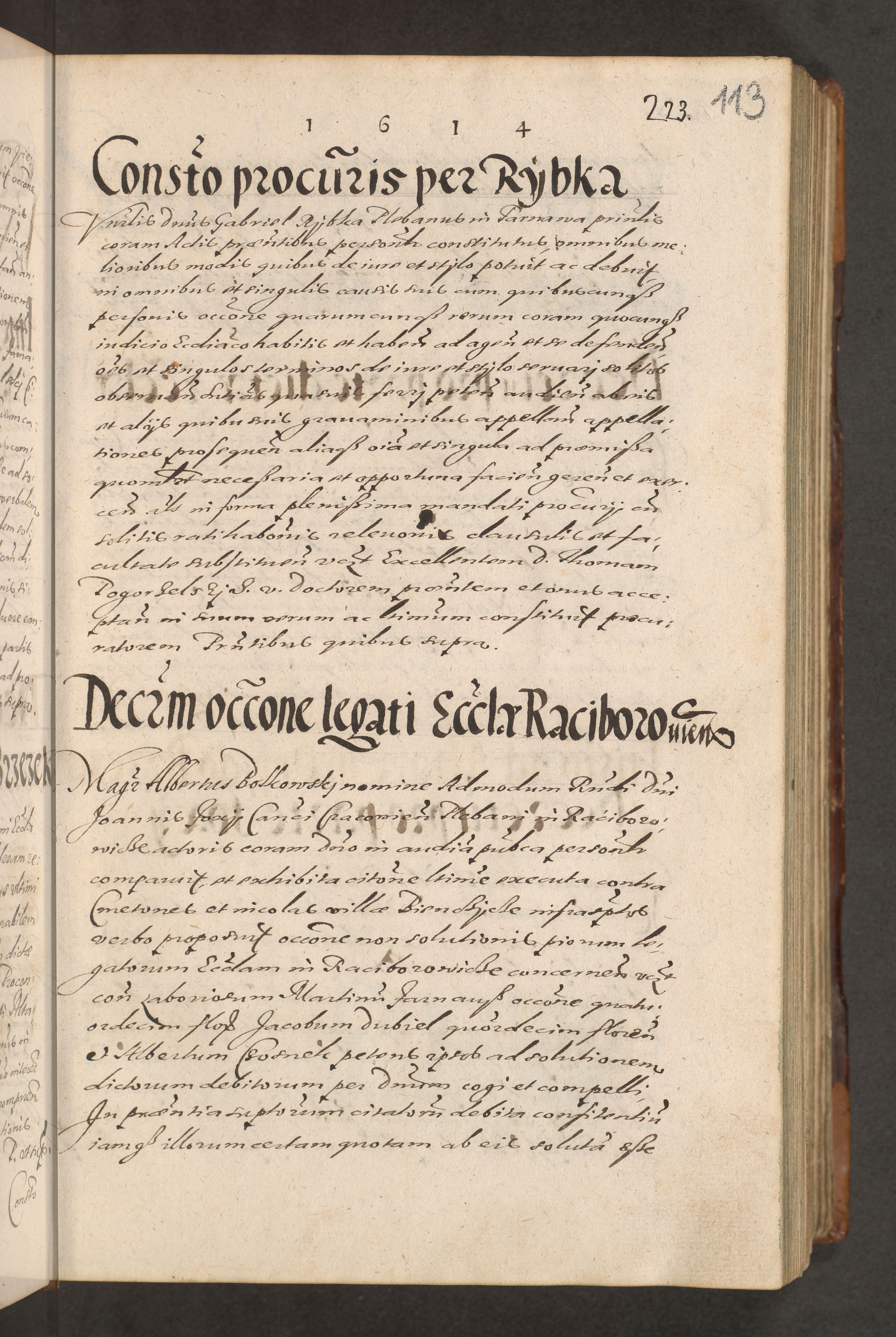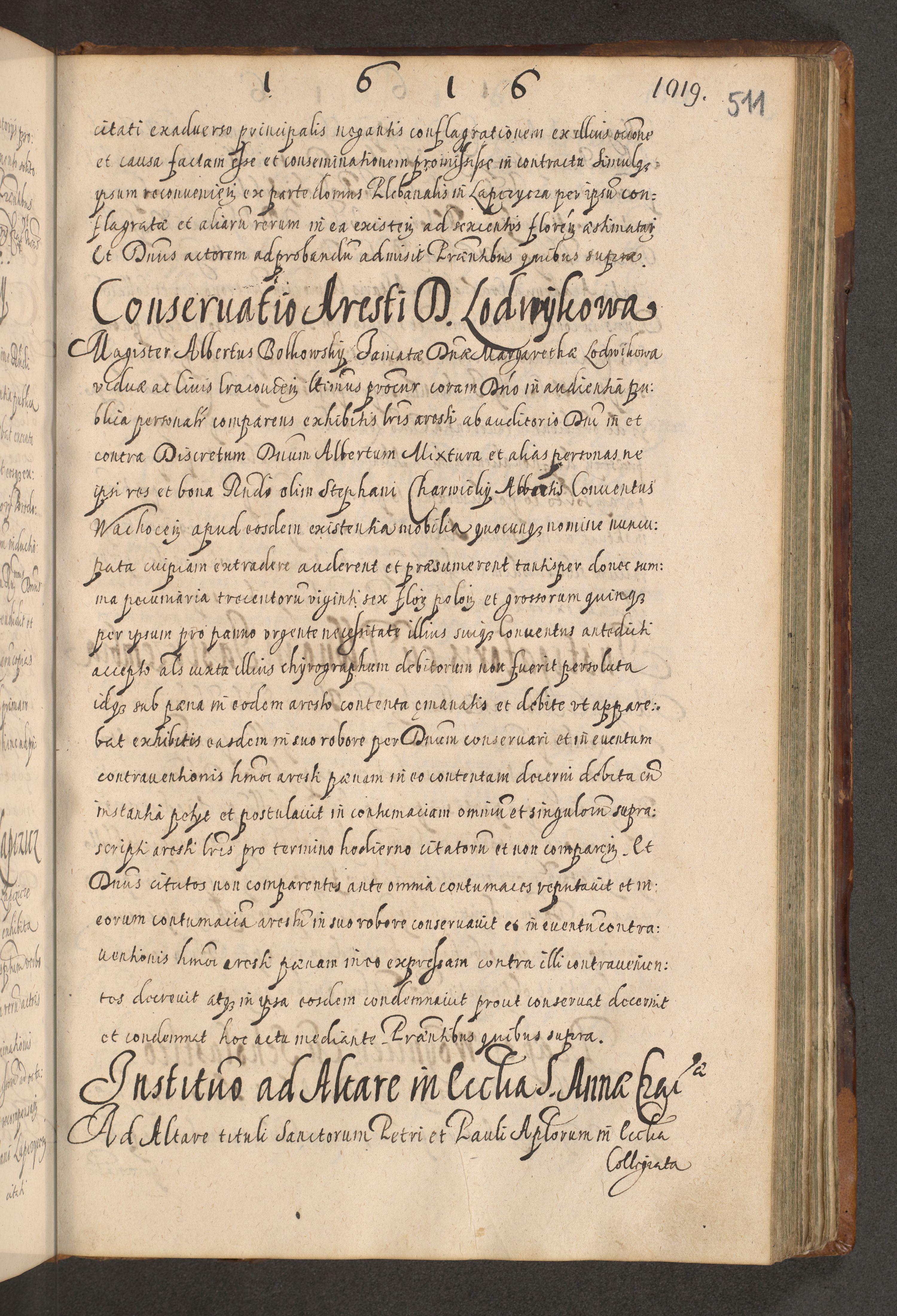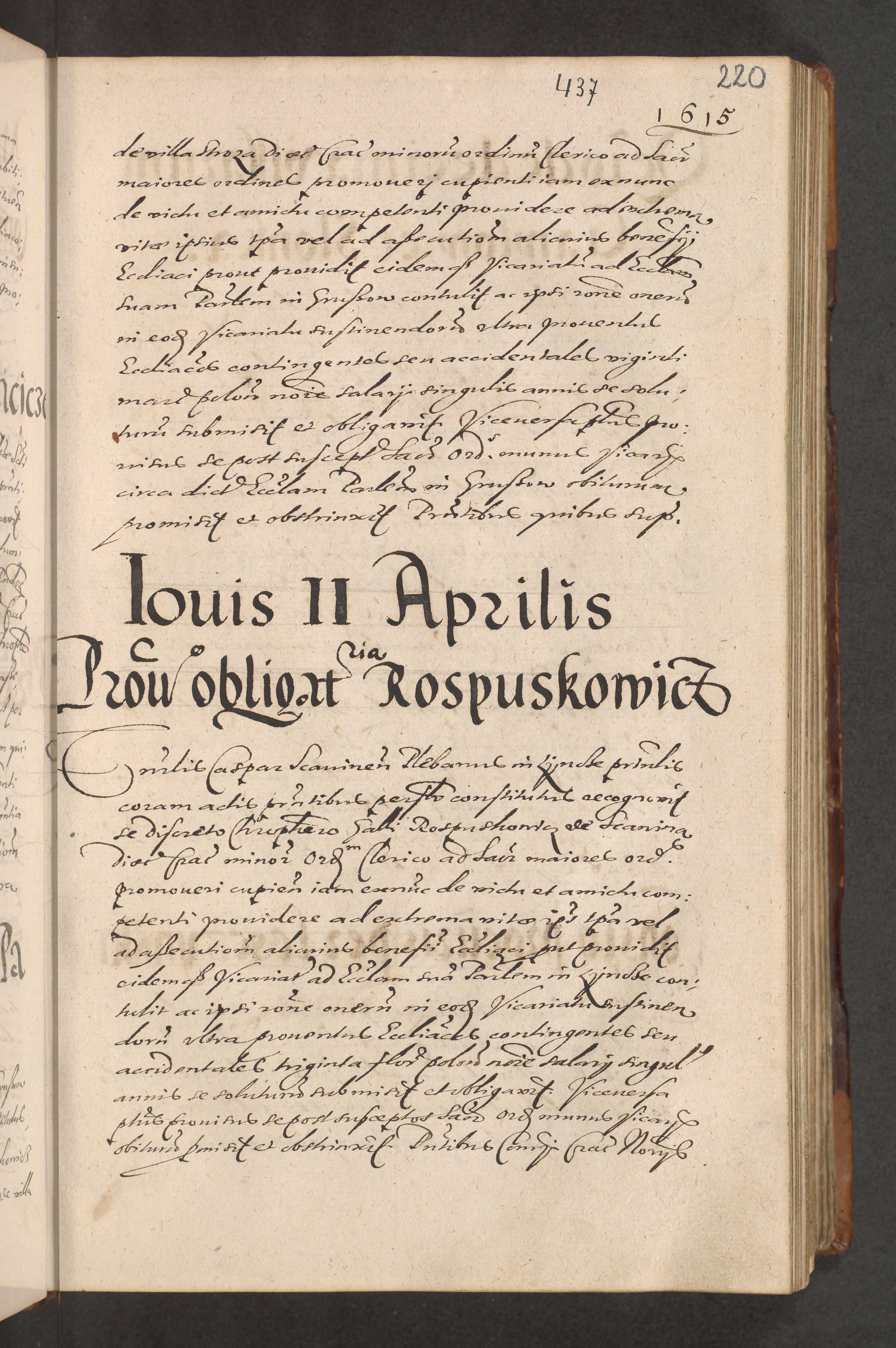 Illustrissimo et Reverendissimo in Christo Patre Domino Domino Petro Tylicki Dei et Apostolice Sedis Gratia Episcopo Cracoviensis Duce Severiensis Acta actorum causarum sententiarum tam interloquutoriarum quam definitivarum decretorum obligationum, quietationum, recognitionum, constitutionum procuratorum etc. etc. coram Admodum Reverendo Domino Thoma Oborski I. V. Doctore Canonico Vicario in Spiritualibus et Officiali generali Cracoviensis in anno Domini Millesimo Sexcentessimo Decimoquarto Cuius Indictio duodecima Pontificus SS. D. N. D. Pauli Divina providentia Papae quinti Anno decimo foeliciter incipiunt