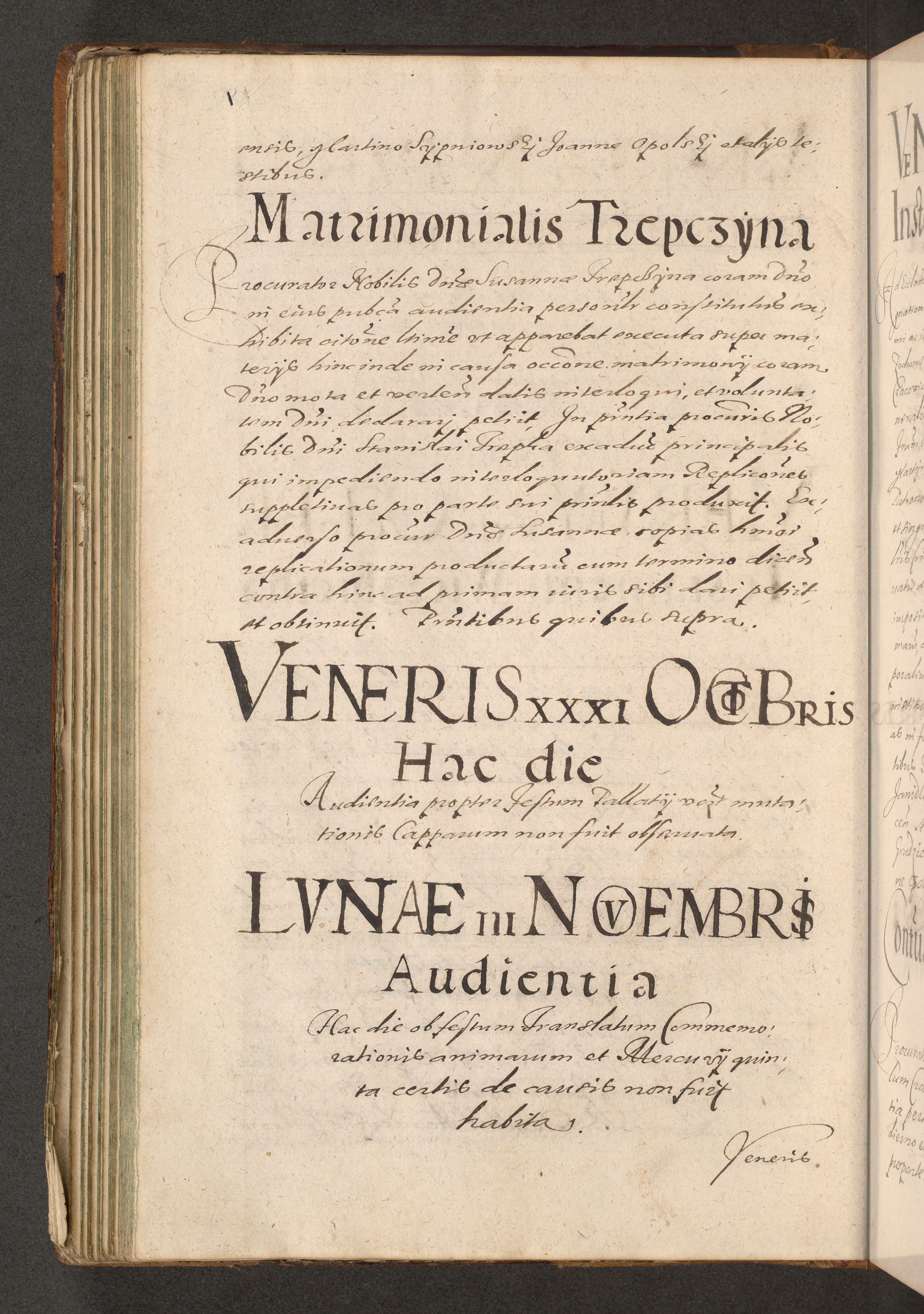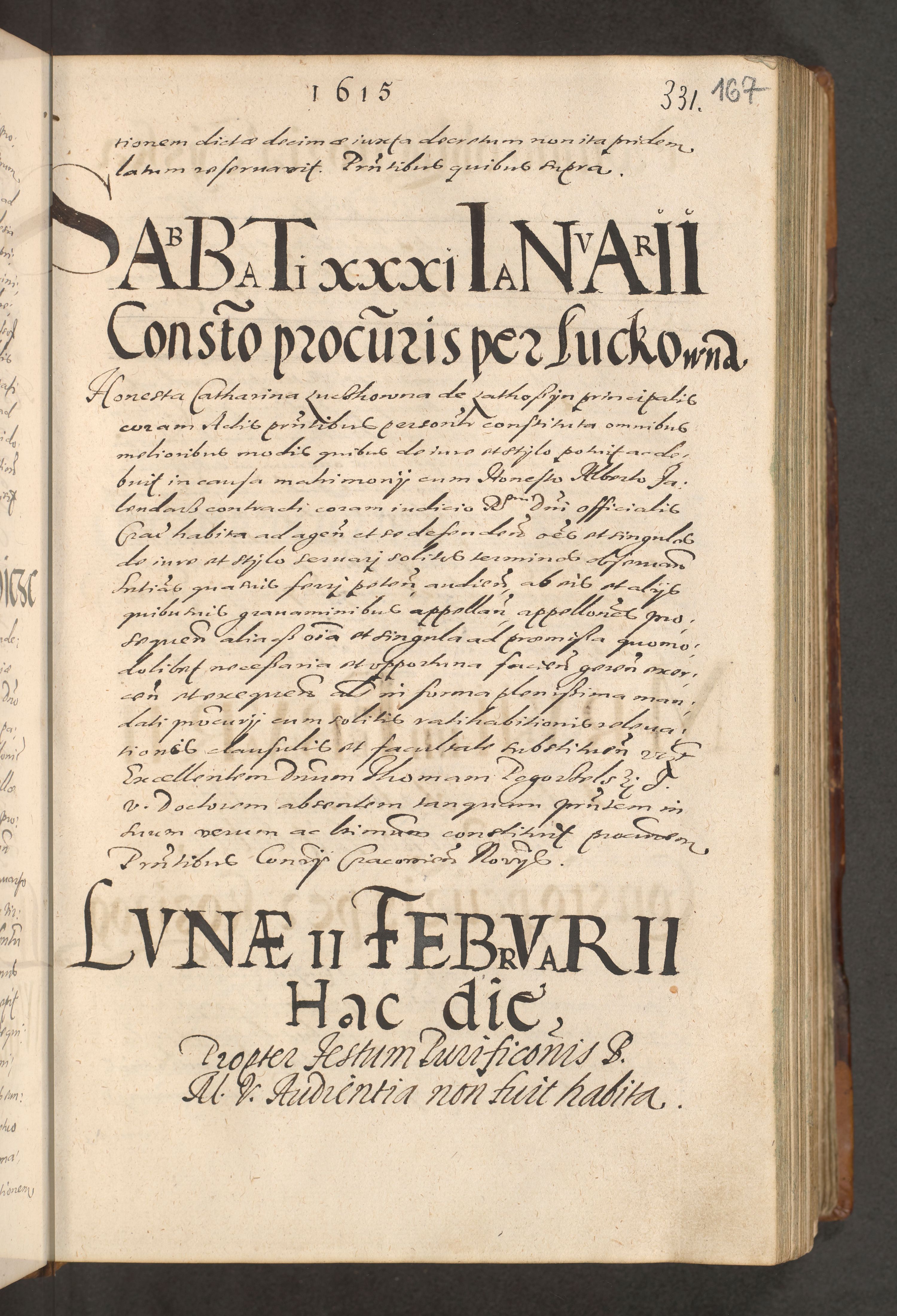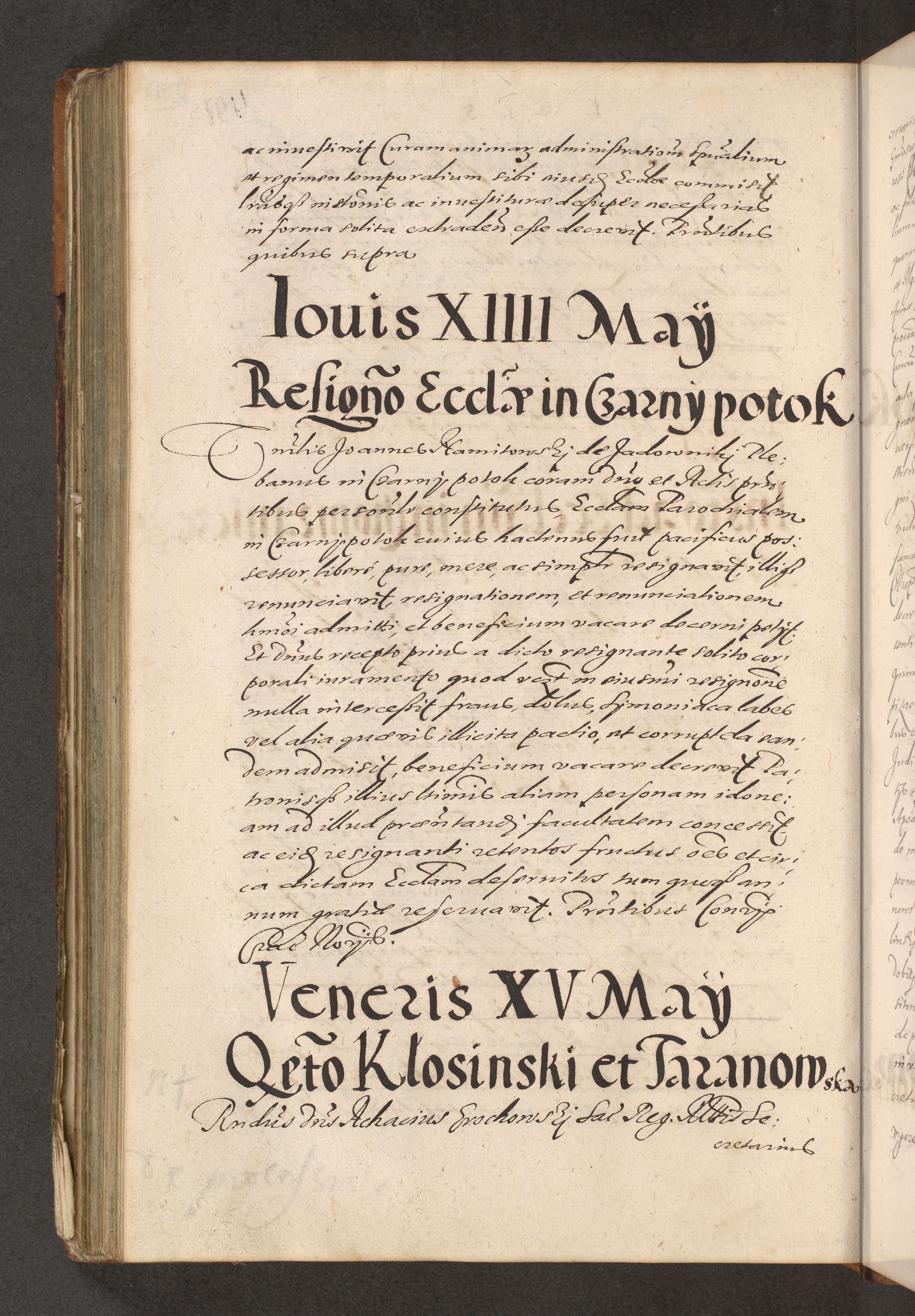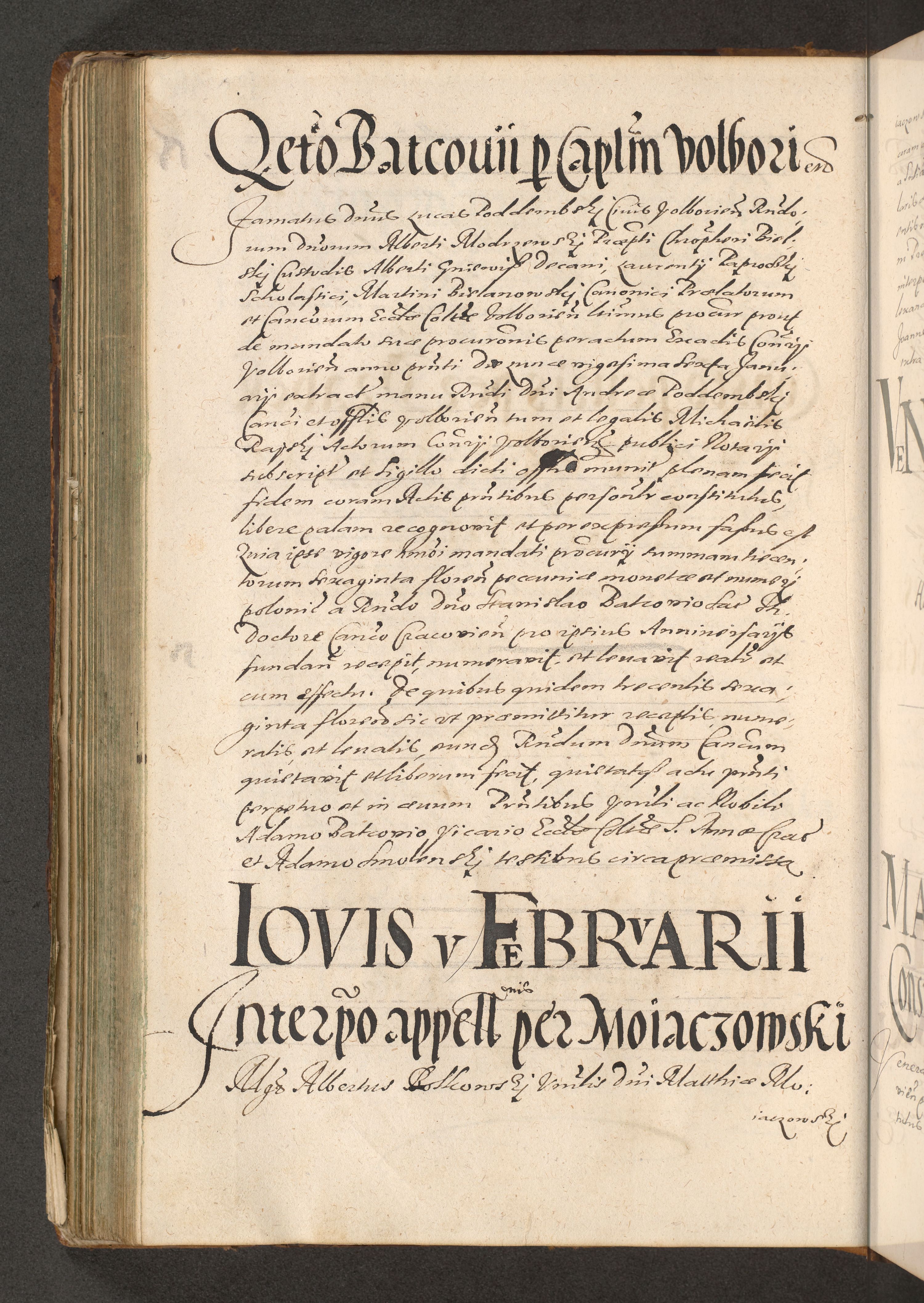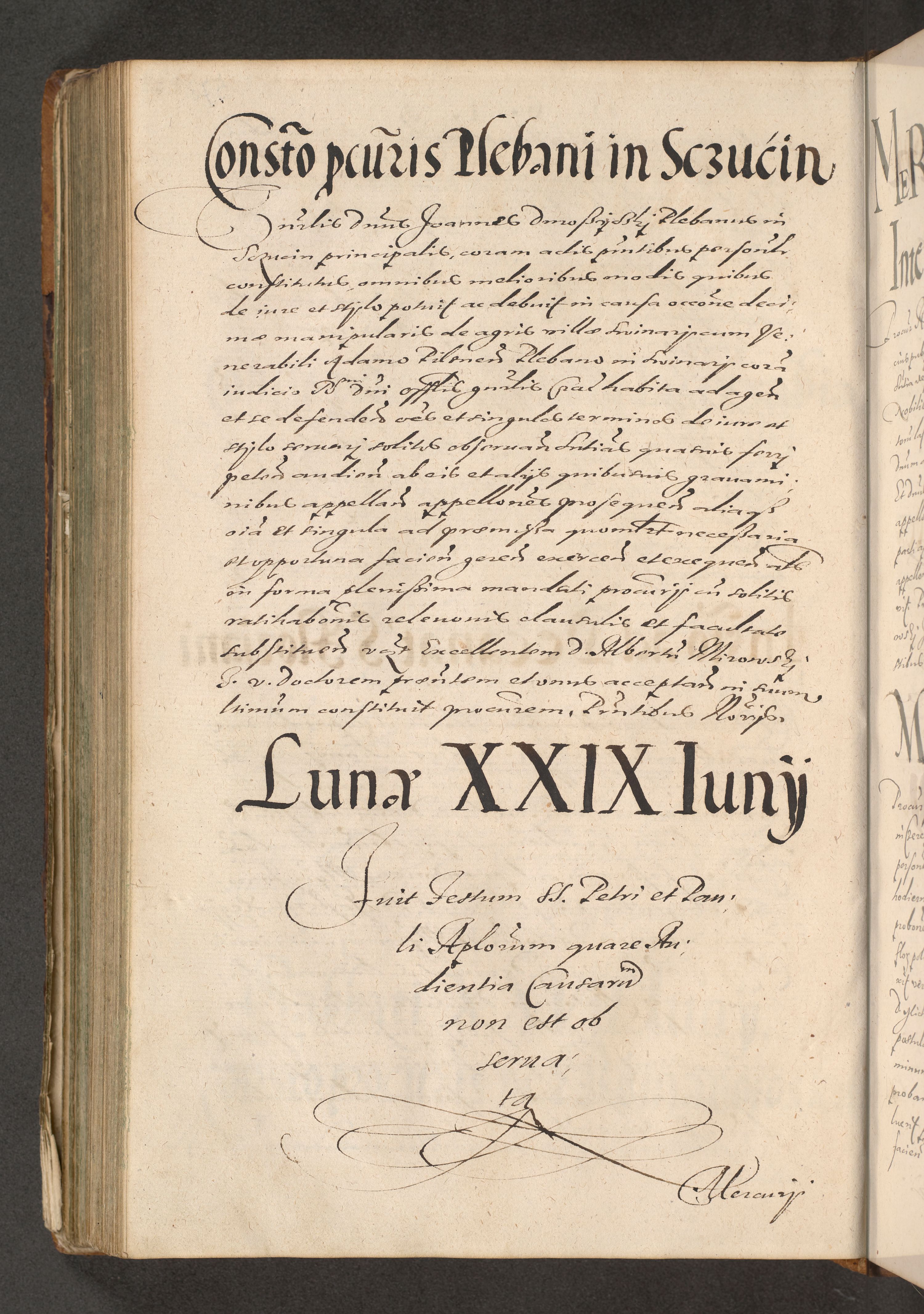 Illustrissimo et Reverendissimo in Christo Patre Domino Domino Petro Tylicki Dei et Apostolice Sedis Gratia Episcopo Cracoviensis Duce Severiensis Acta actorum causarum sententiarum tam interloquutoriarum quam definitivarum decretorum obligationum, quietationum, recognitionum, constitutionum procuratorum etc. etc. coram Admodum Reverendo Domino Thoma Oborski I. V. Doctore Canonico Vicario in Spiritualibus et Officiali generali Cracoviensis in anno Domini Millesimo Sexcentessimo Decimoquarto Cuius Indictio duodecima Pontificus SS. D. N. D. Pauli Divina providentia Papae quinti Anno decimo foeliciter incipiunt