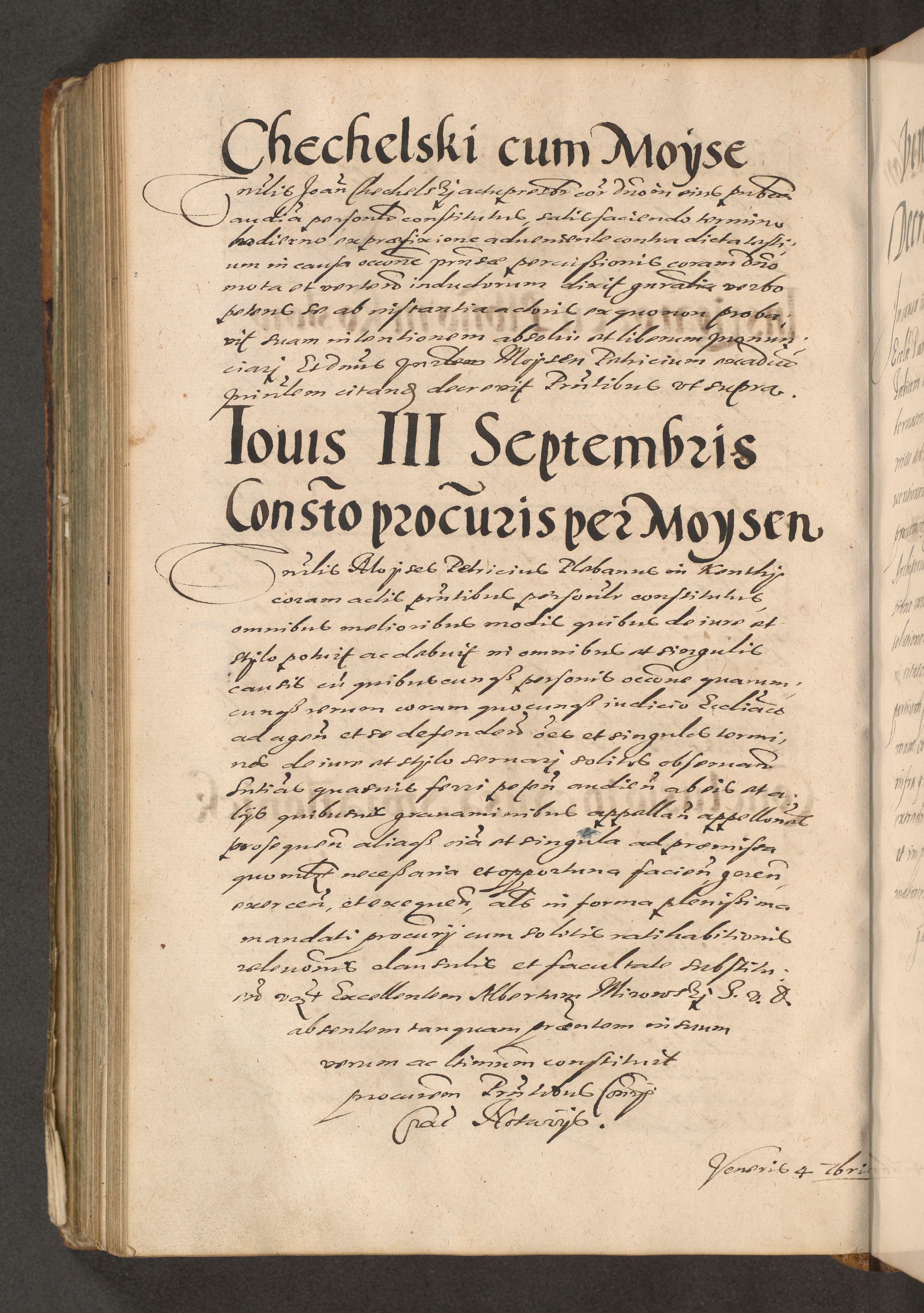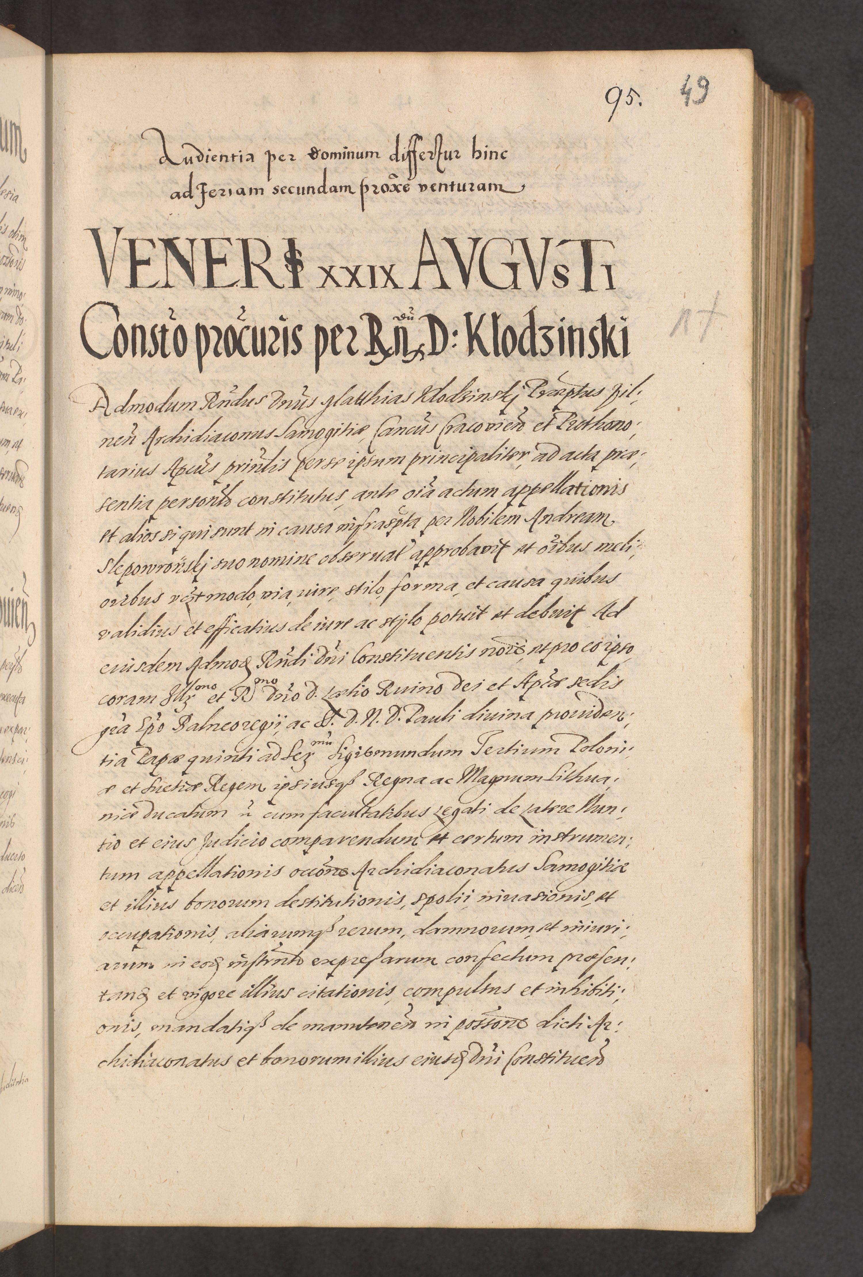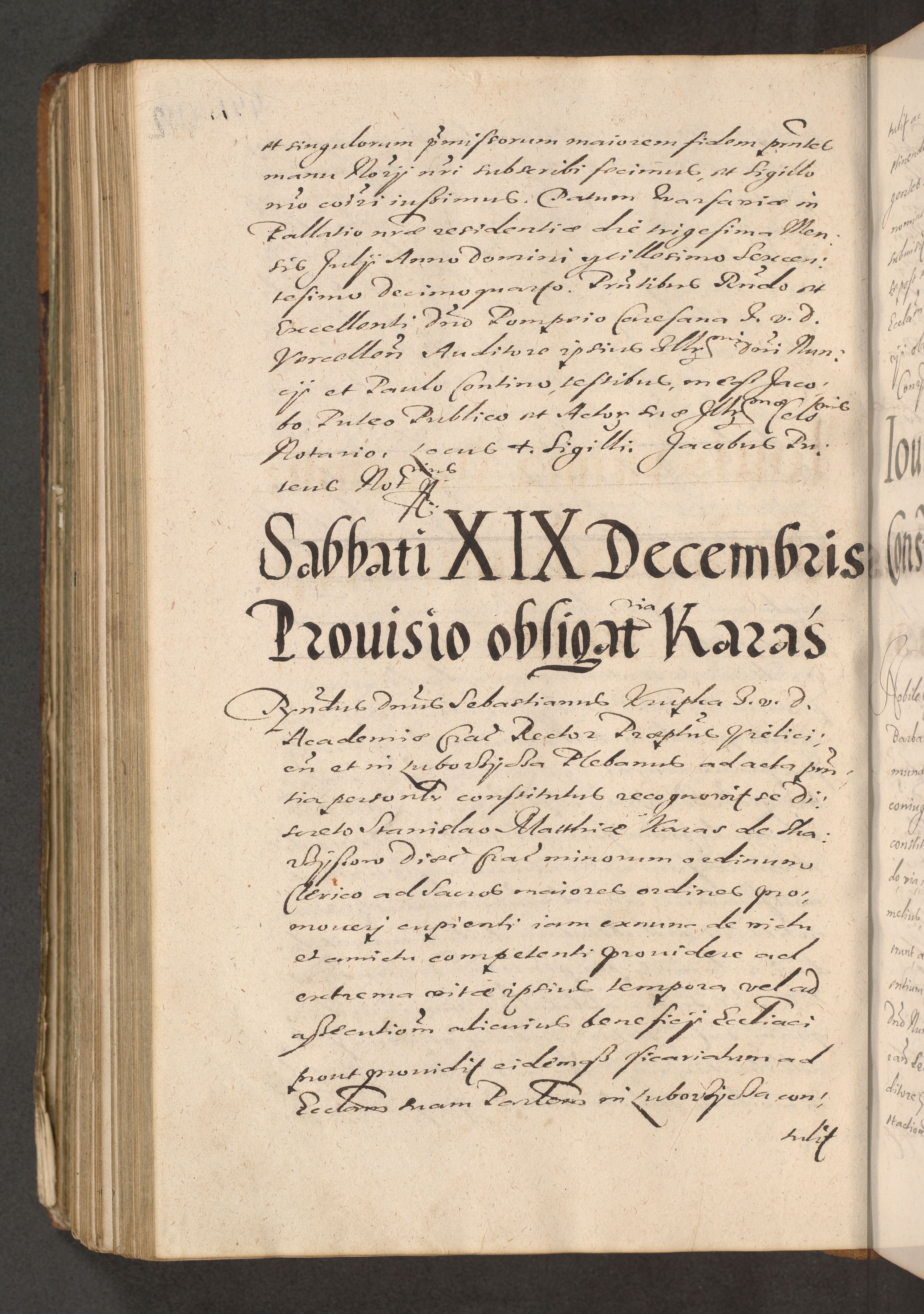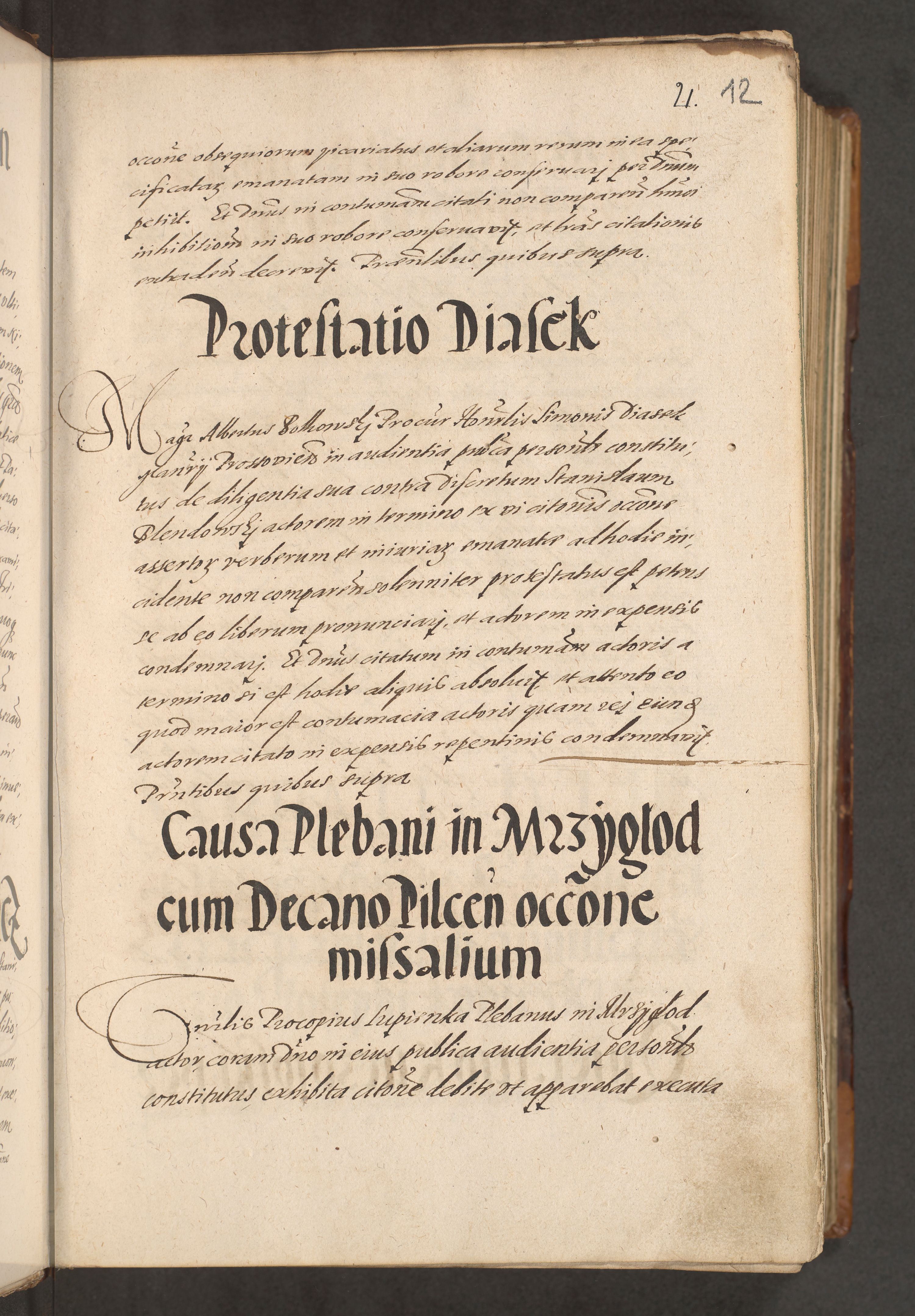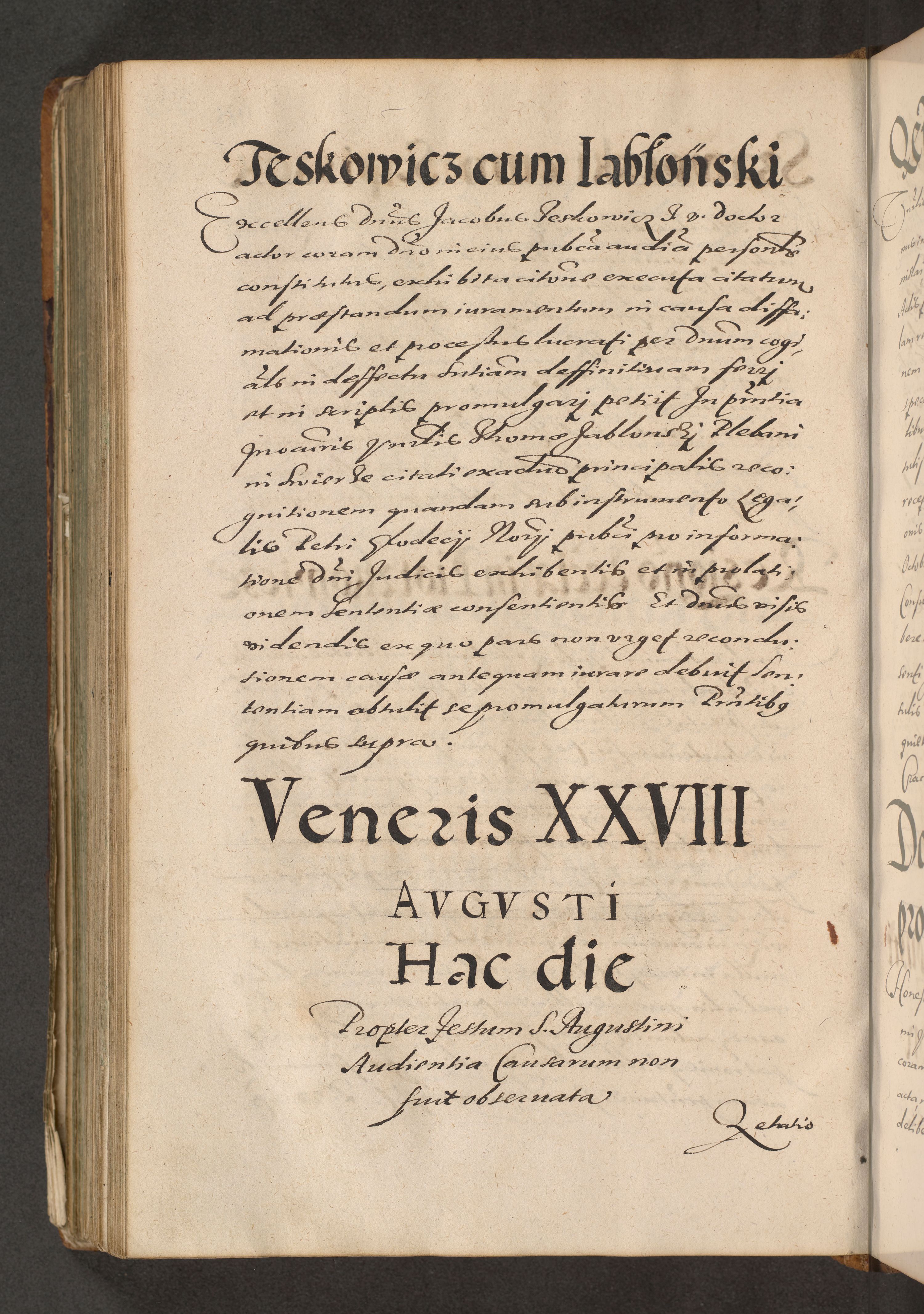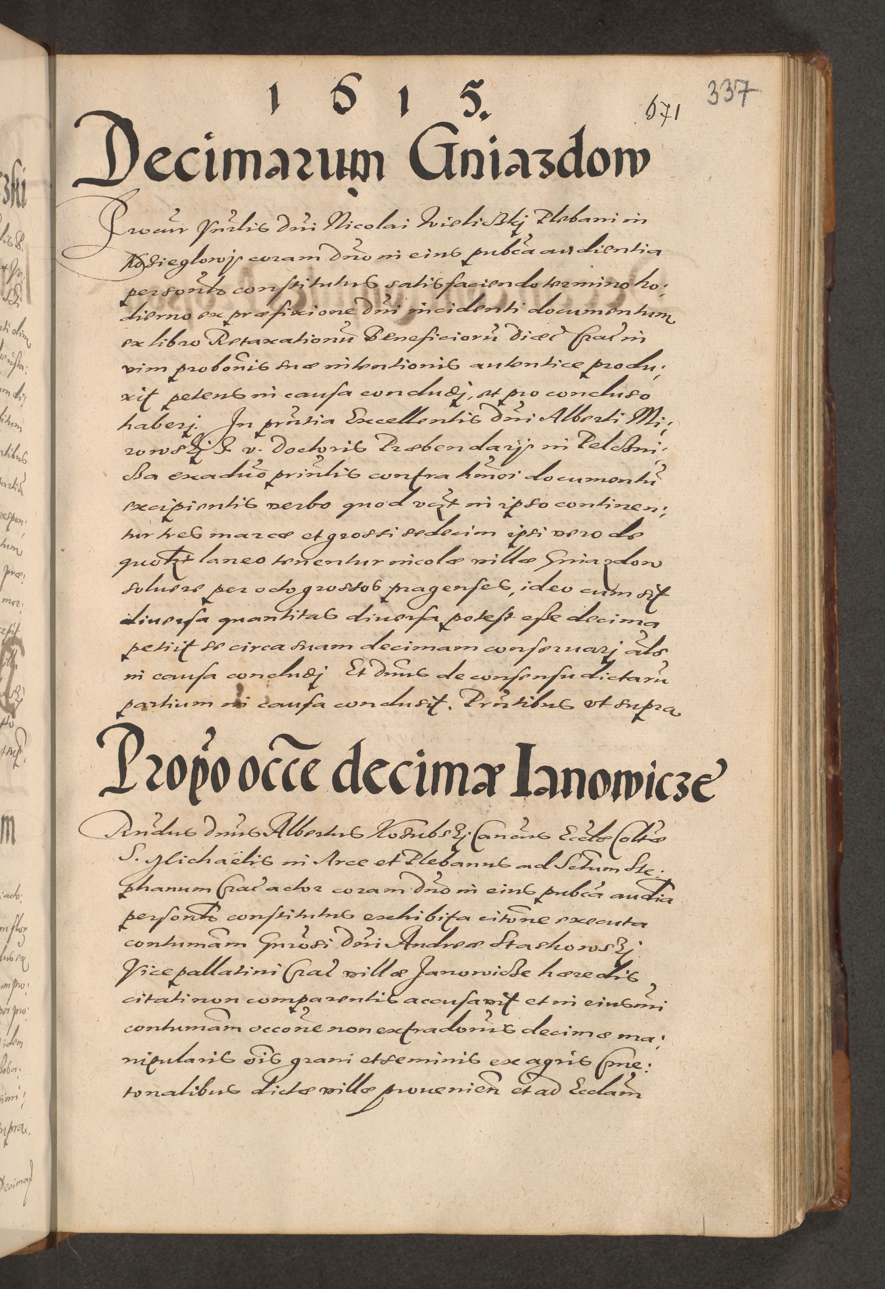 Illustrissimo et Reverendissimo in Christo Patre Domino Domino Petro Tylicki Dei et Apostolice Sedis Gratia Episcopo Cracoviensis Duce Severiensis Acta actorum causarum sententiarum tam interloquutoriarum quam definitivarum decretorum obligationum, quietationum, recognitionum, constitutionum procuratorum etc. etc. coram Admodum Reverendo Domino Thoma Oborski I. V. Doctore Canonico Vicario in Spiritualibus et Officiali generali Cracoviensis in anno Domini Millesimo Sexcentessimo Decimoquarto Cuius Indictio duodecima Pontificus SS. D. N. D. Pauli Divina providentia Papae quinti Anno decimo foeliciter incipiunt