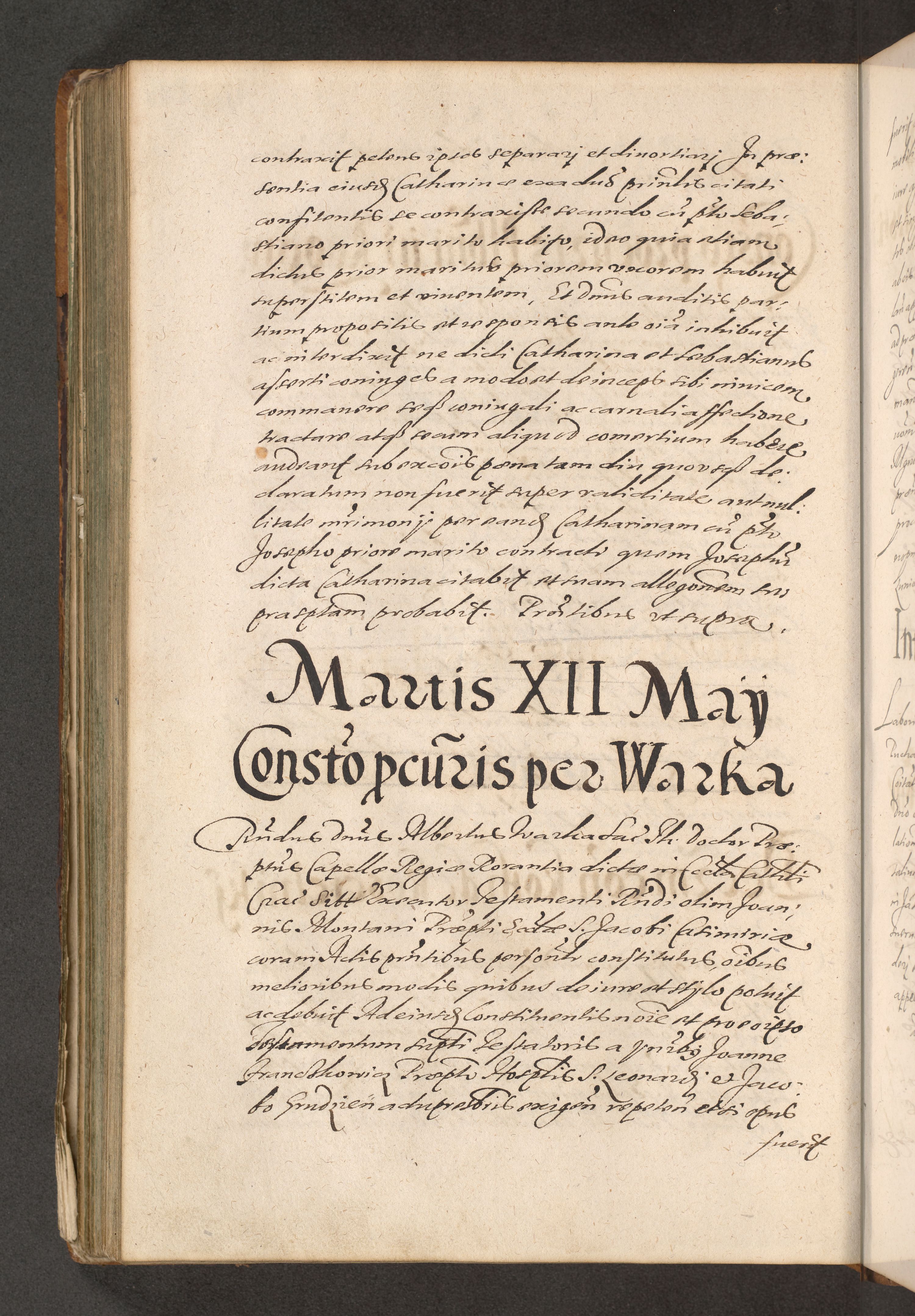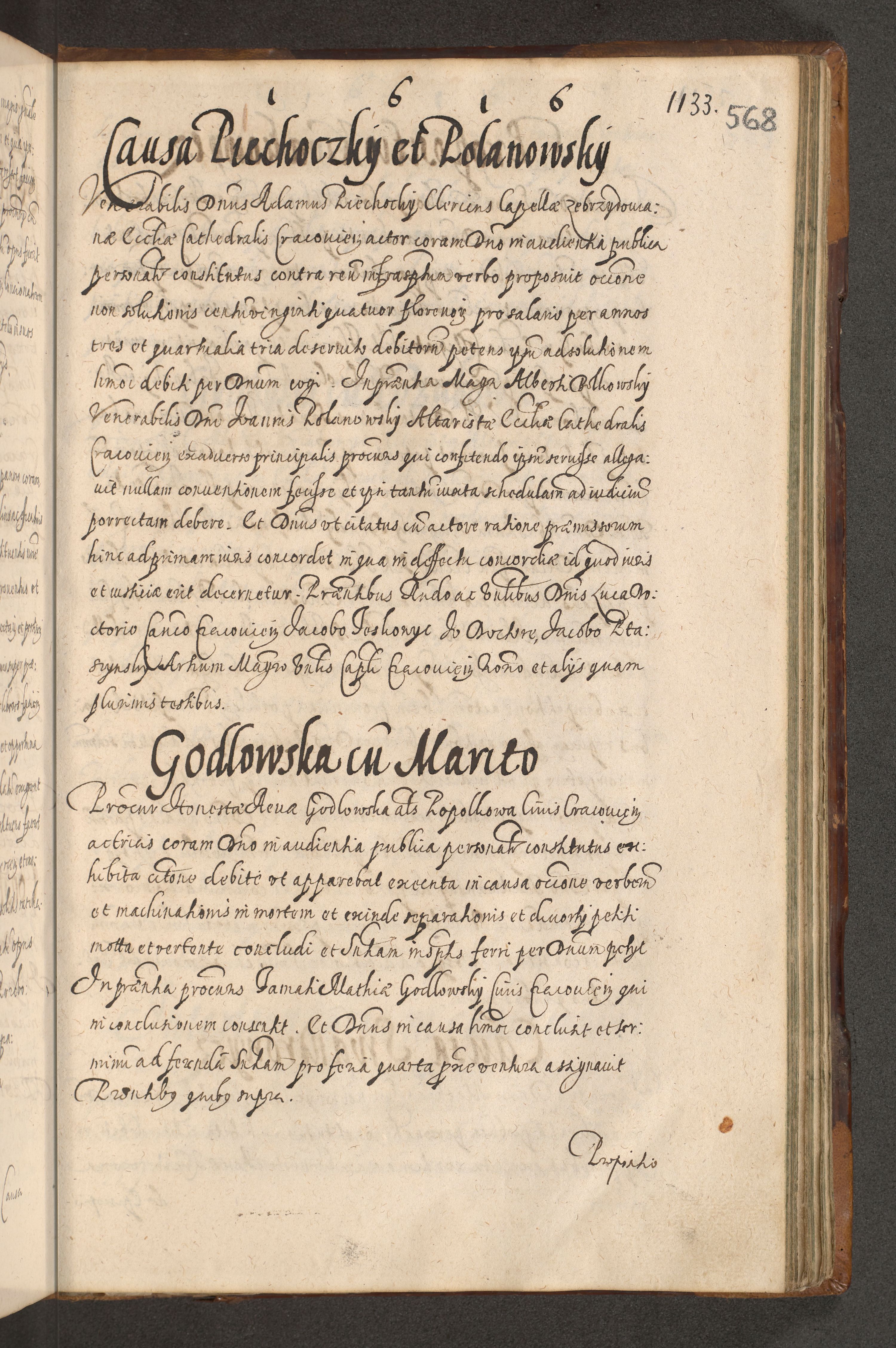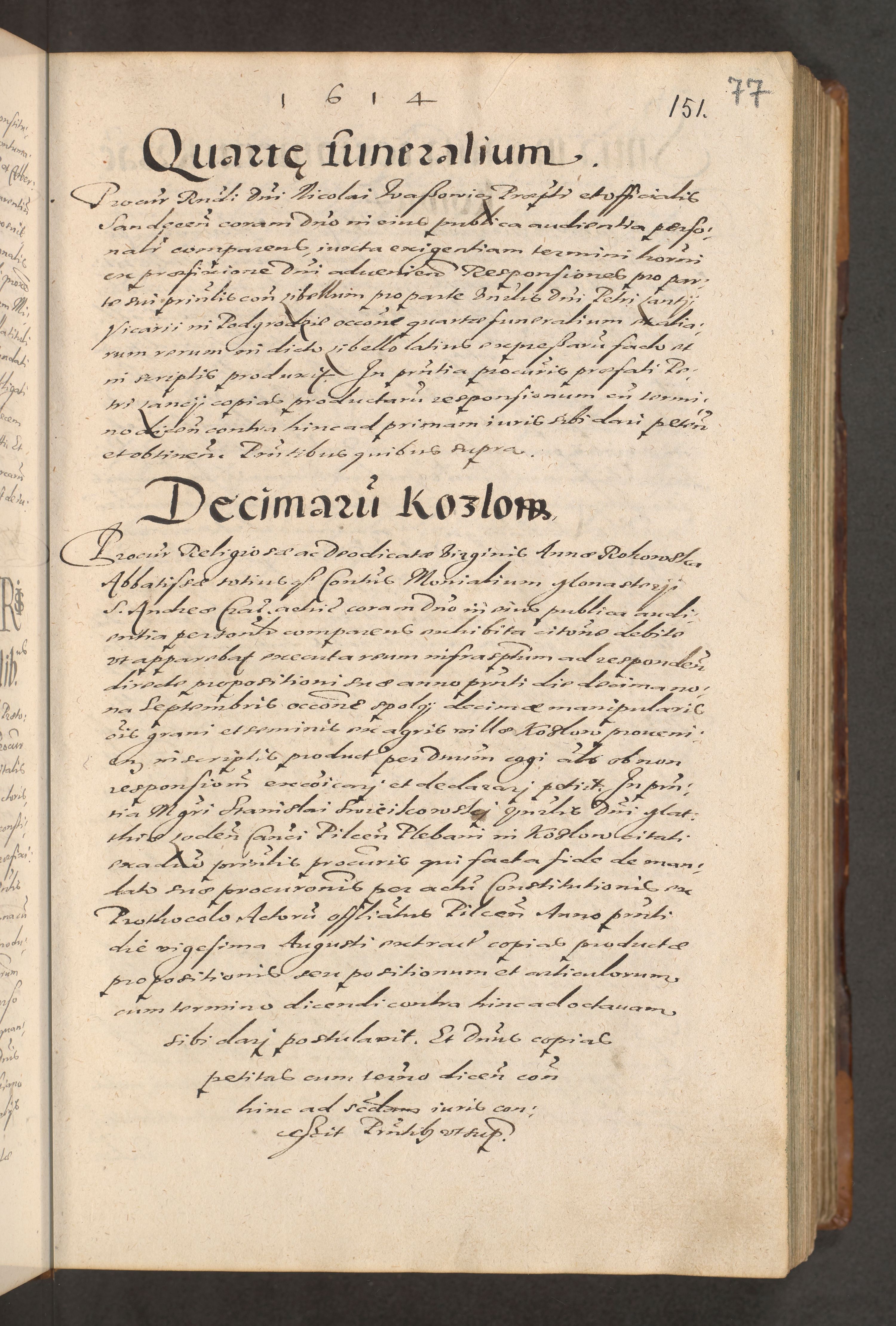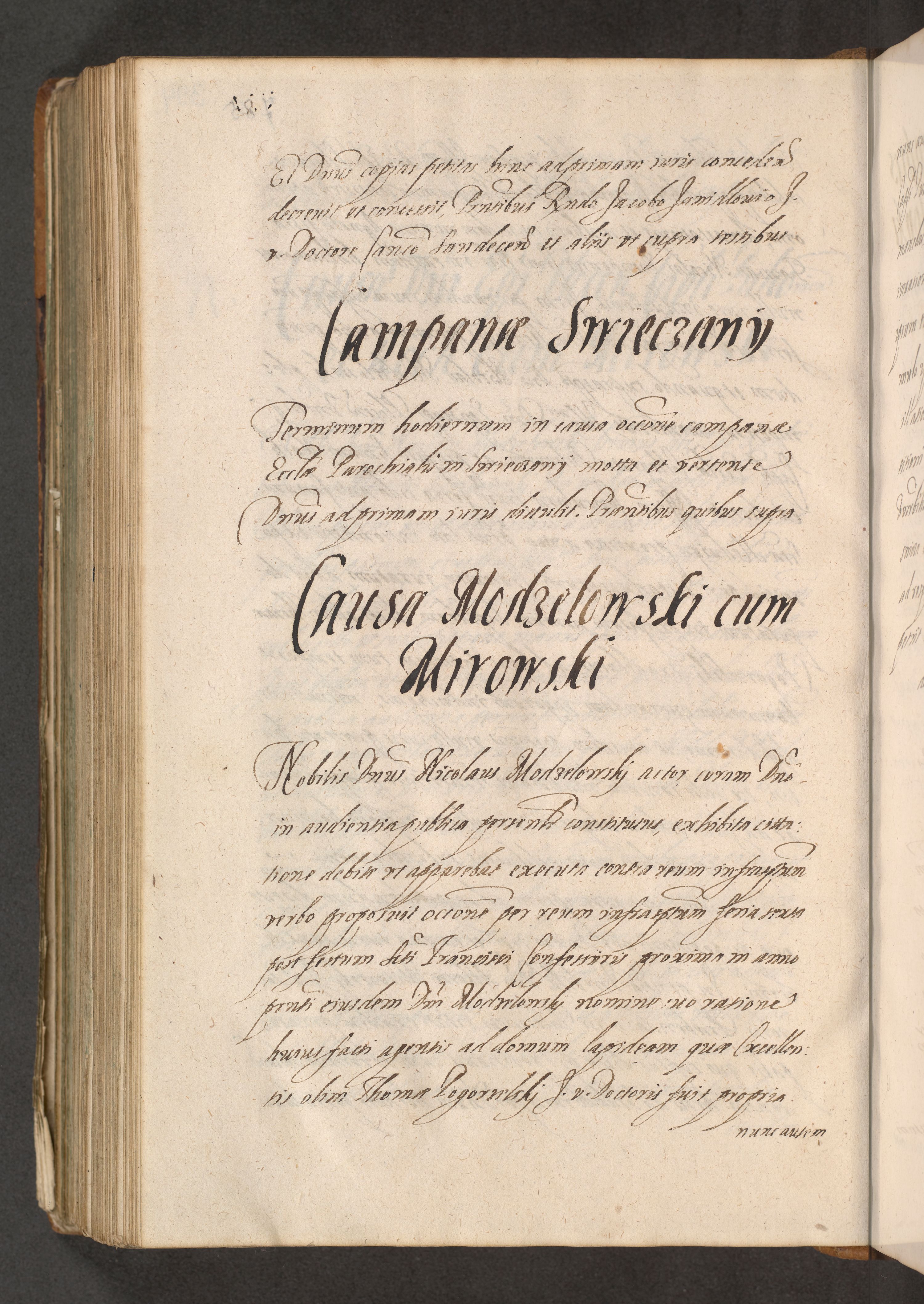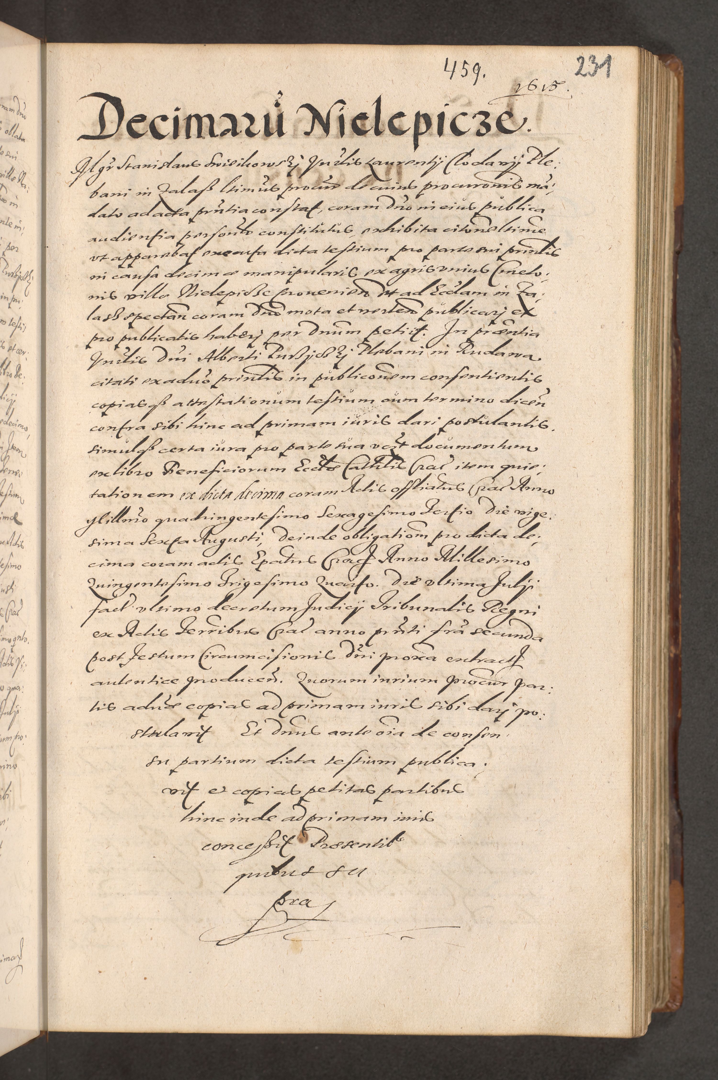 Illustrissimo et Reverendissimo in Christo Patre Domino Domino Petro Tylicki Dei et Apostolice Sedis Gratia Episcopo Cracoviensis Duce Severiensis Acta actorum causarum sententiarum tam interloquutoriarum quam definitivarum decretorum obligationum, quietationum, recognitionum, constitutionum procuratorum etc. etc. coram Admodum Reverendo Domino Thoma Oborski I. V. Doctore Canonico Vicario in Spiritualibus et Officiali generali Cracoviensis in anno Domini Millesimo Sexcentessimo Decimoquarto Cuius Indictio duodecima Pontificus SS. D. N. D. Pauli Divina providentia Papae quinti Anno decimo foeliciter incipiunt