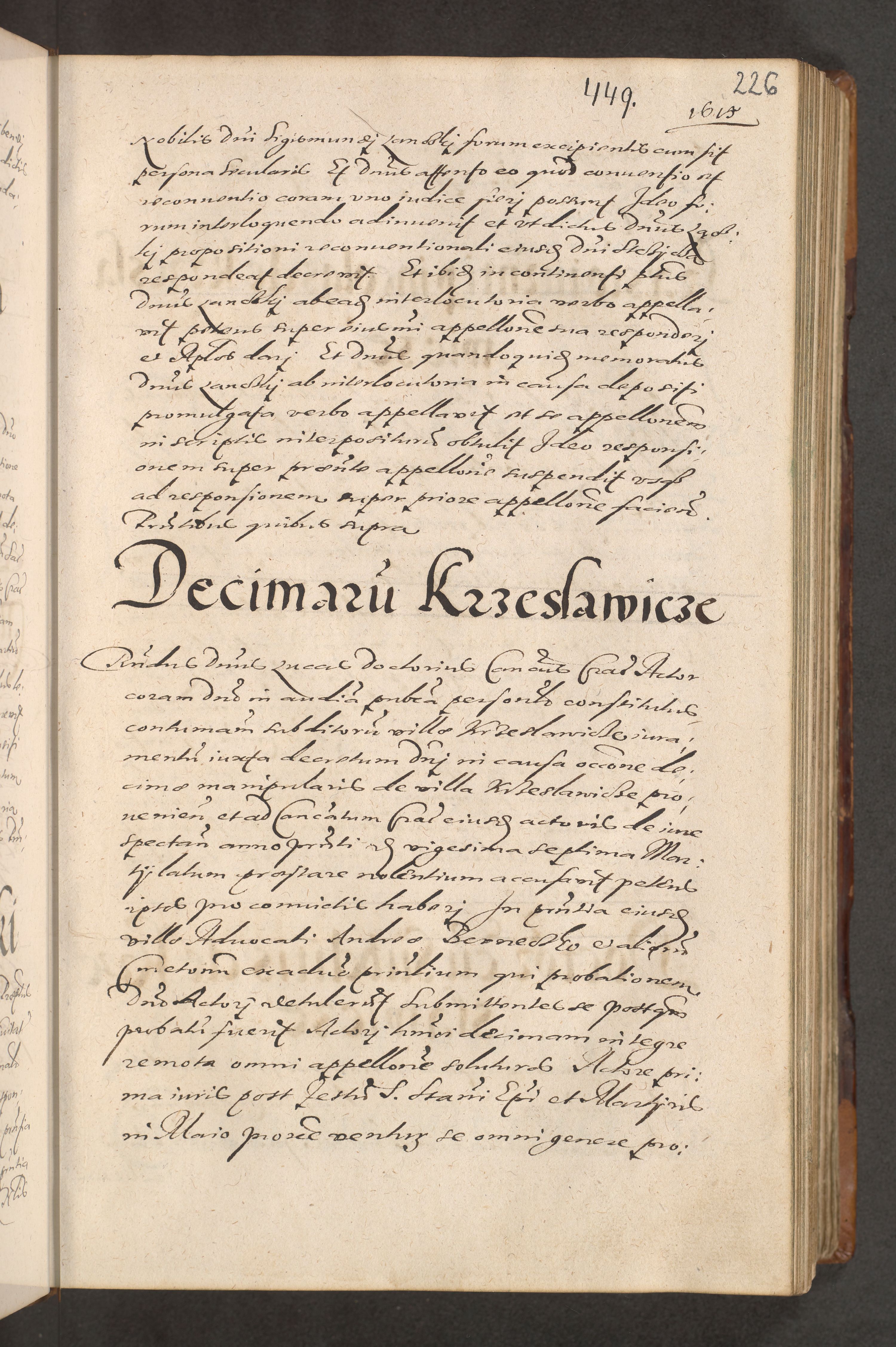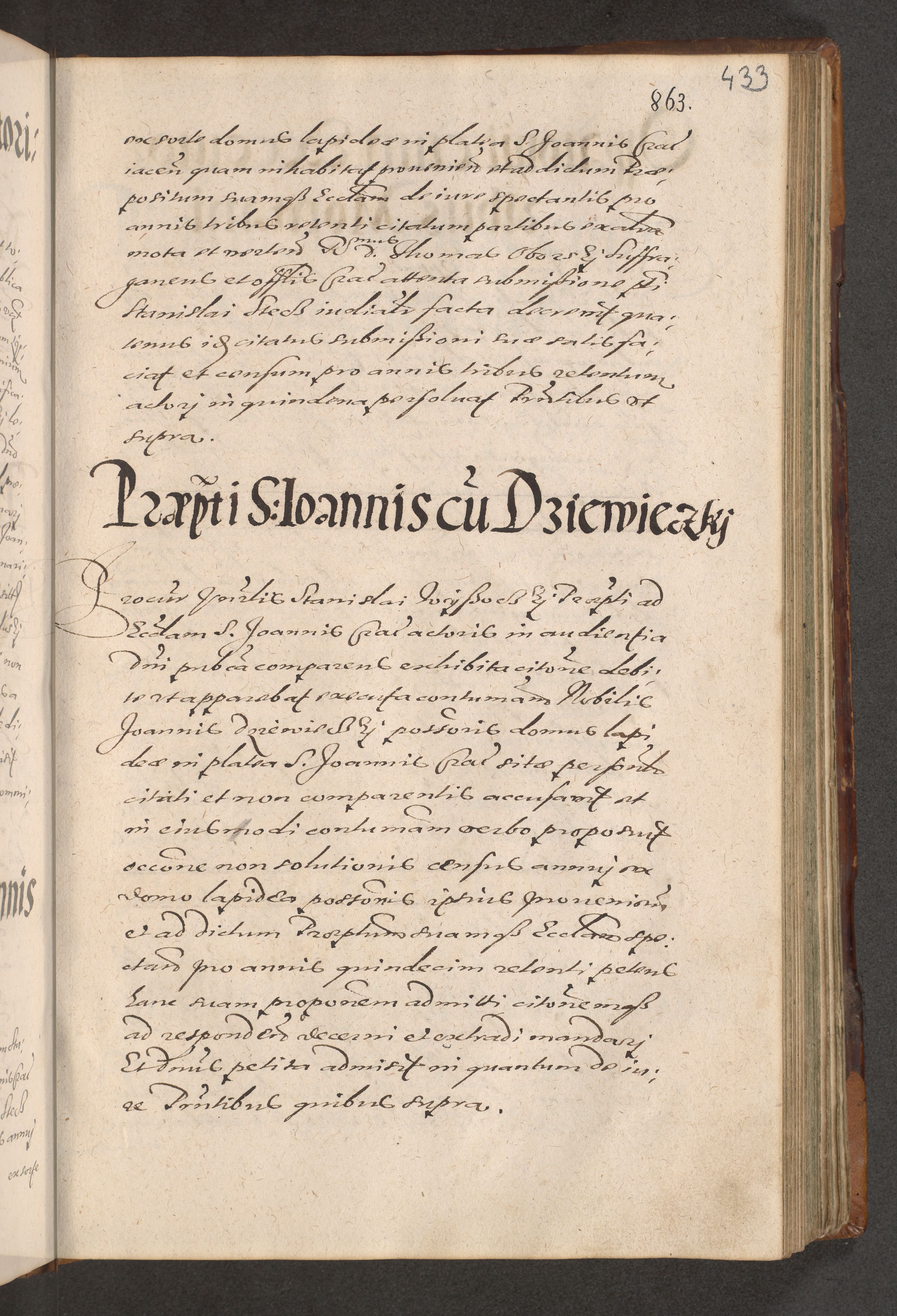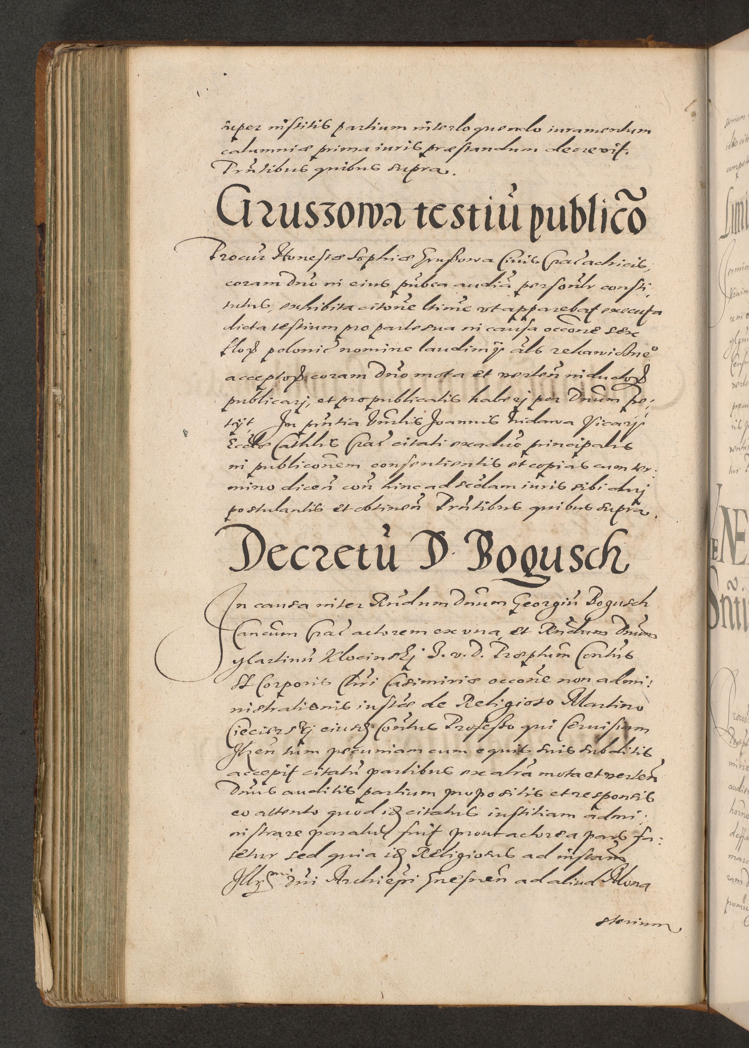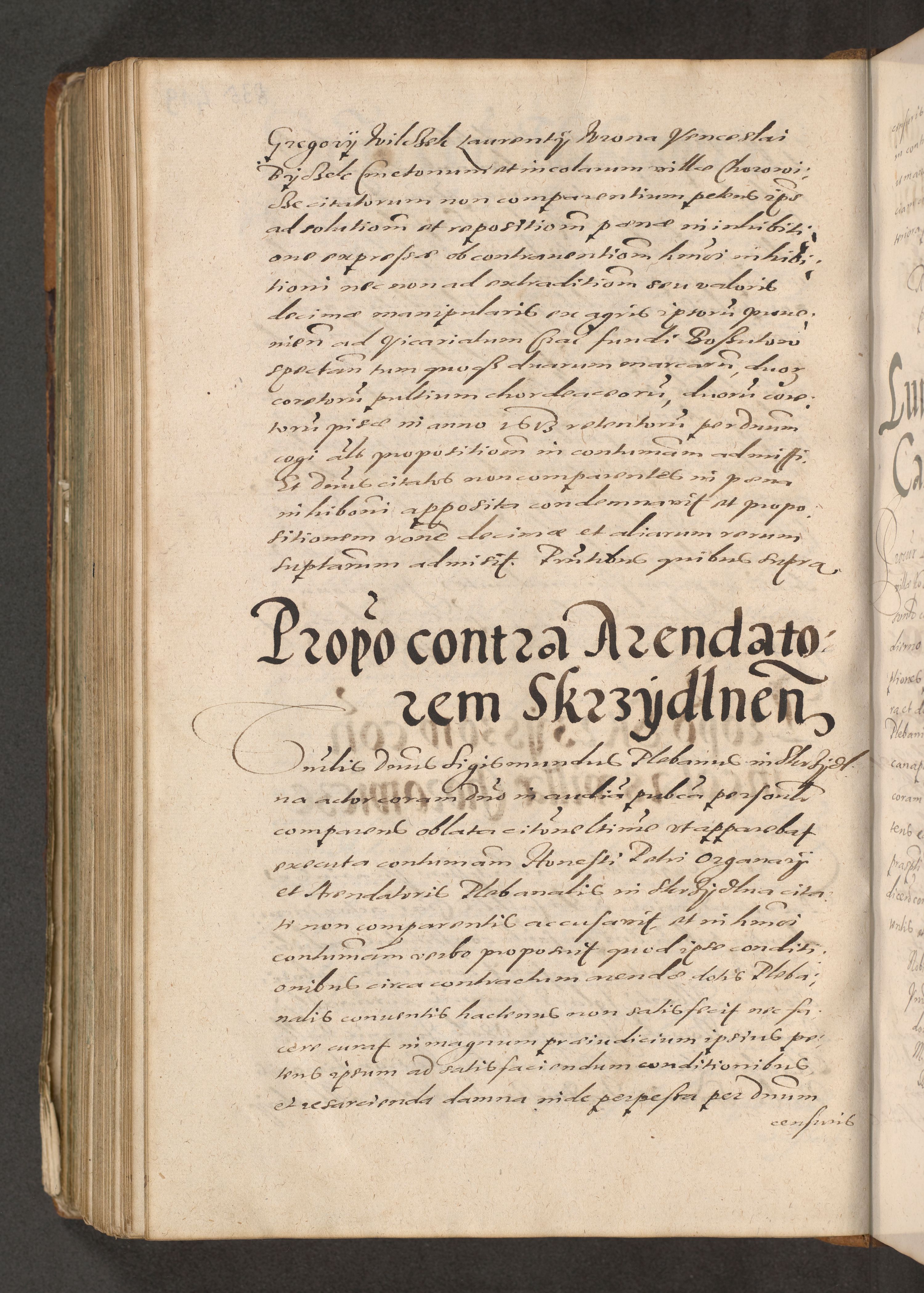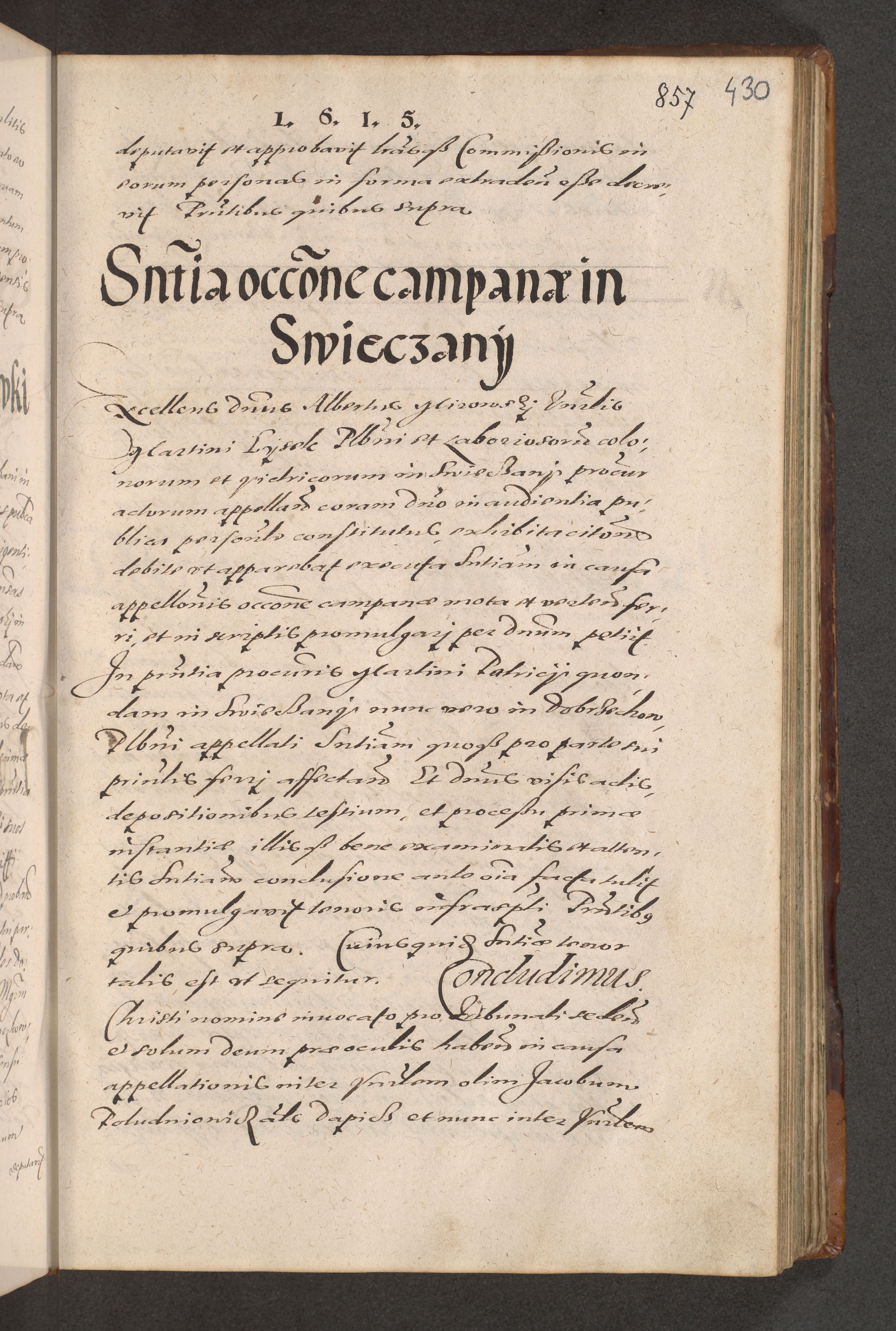 Illustrissimo et Reverendissimo in Christo Patre Domino Domino Petro Tylicki Dei et Apostolice Sedis Gratia Episcopo Cracoviensis Duce Severiensis Acta actorum causarum sententiarum tam interloquutoriarum quam definitivarum decretorum obligationum, quietationum, recognitionum, constitutionum procuratorum etc. etc. coram Admodum Reverendo Domino Thoma Oborski I. V. Doctore Canonico Vicario in Spiritualibus et Officiali generali Cracoviensis in anno Domini Millesimo Sexcentessimo Decimoquarto Cuius Indictio duodecima Pontificus SS. D. N. D. Pauli Divina providentia Papae quinti Anno decimo foeliciter incipiunt