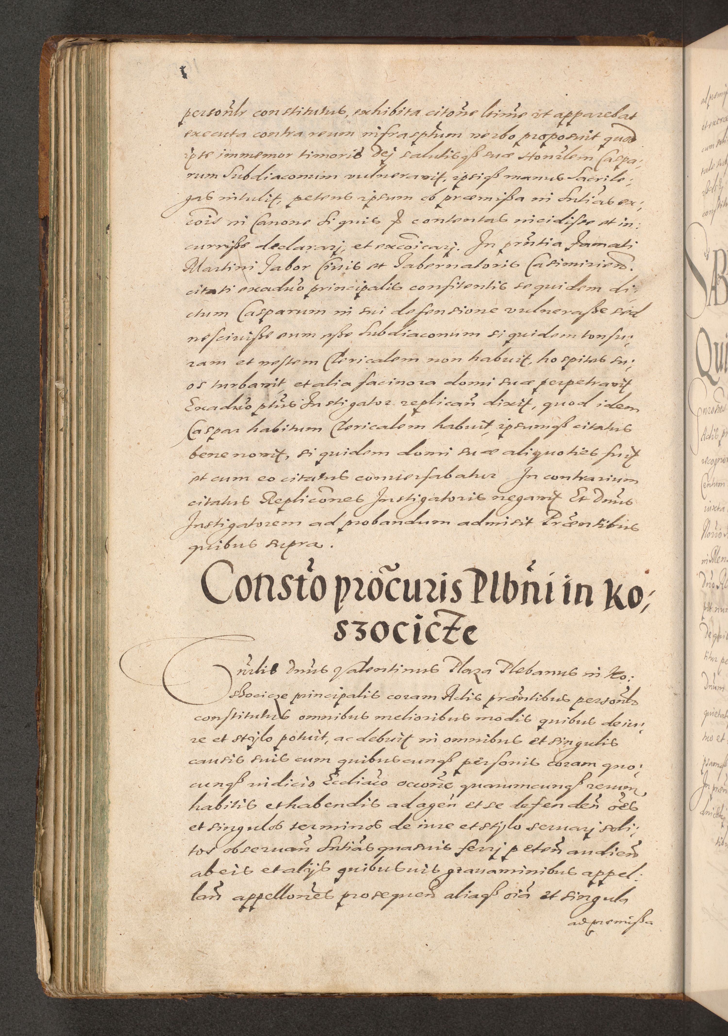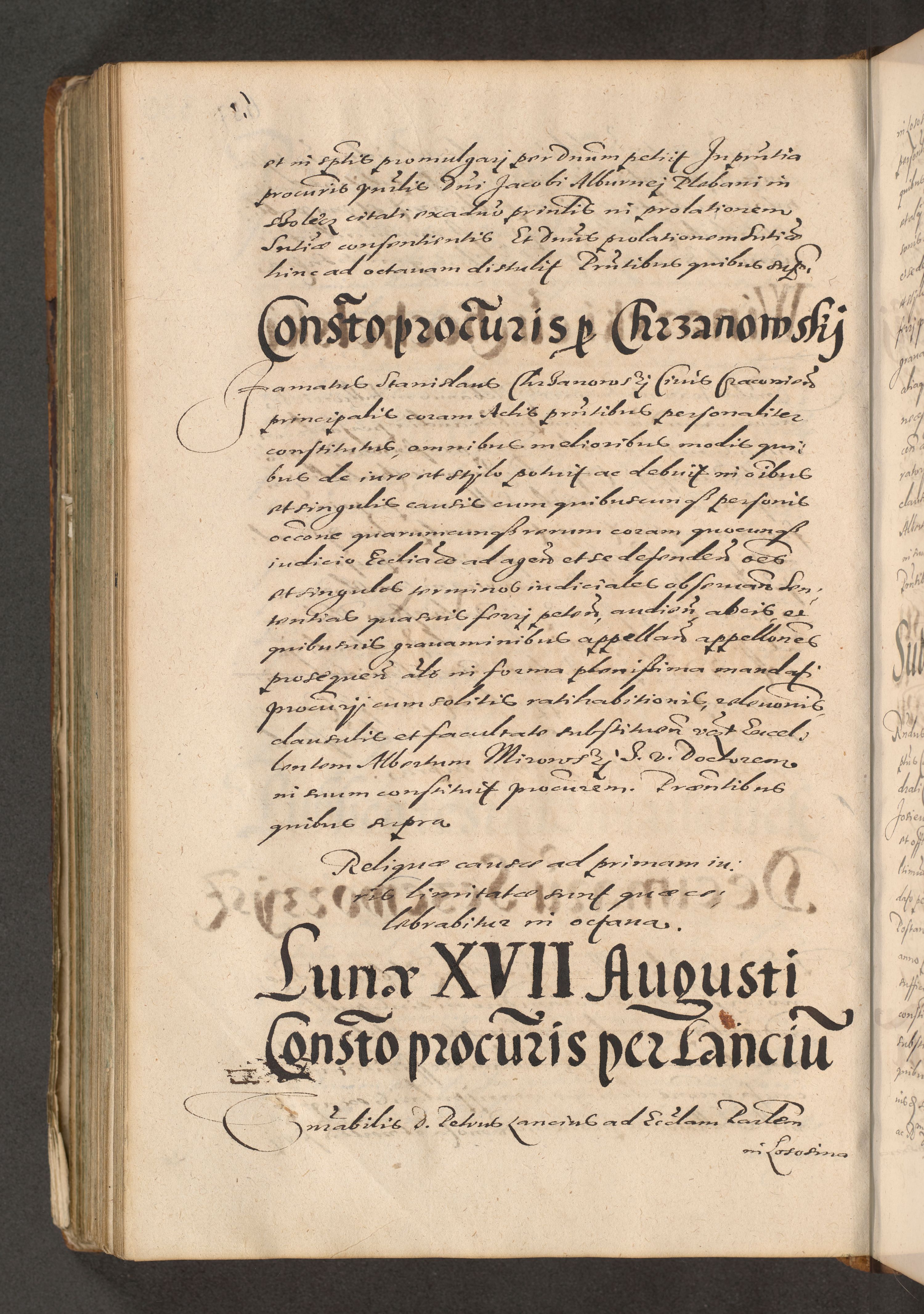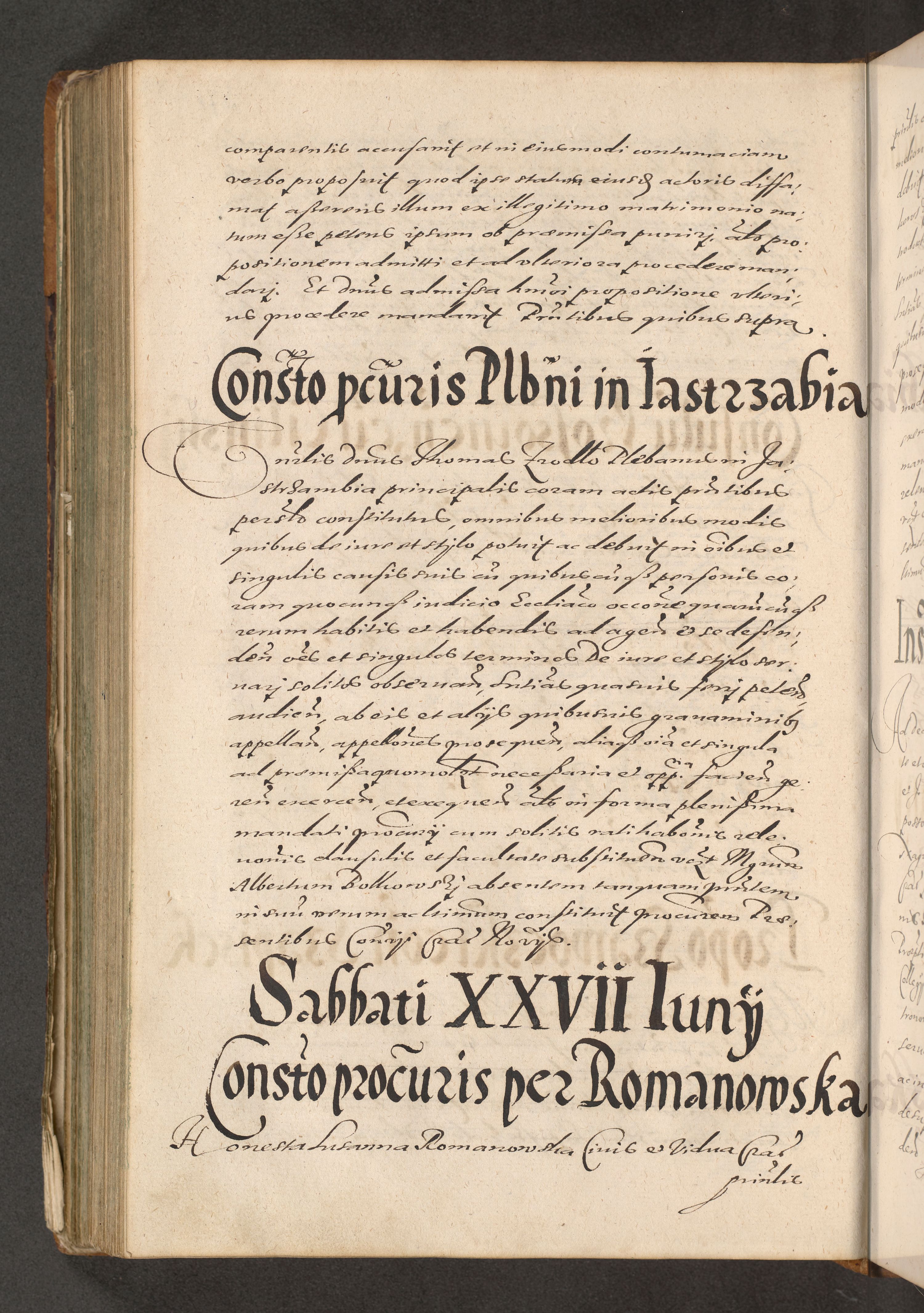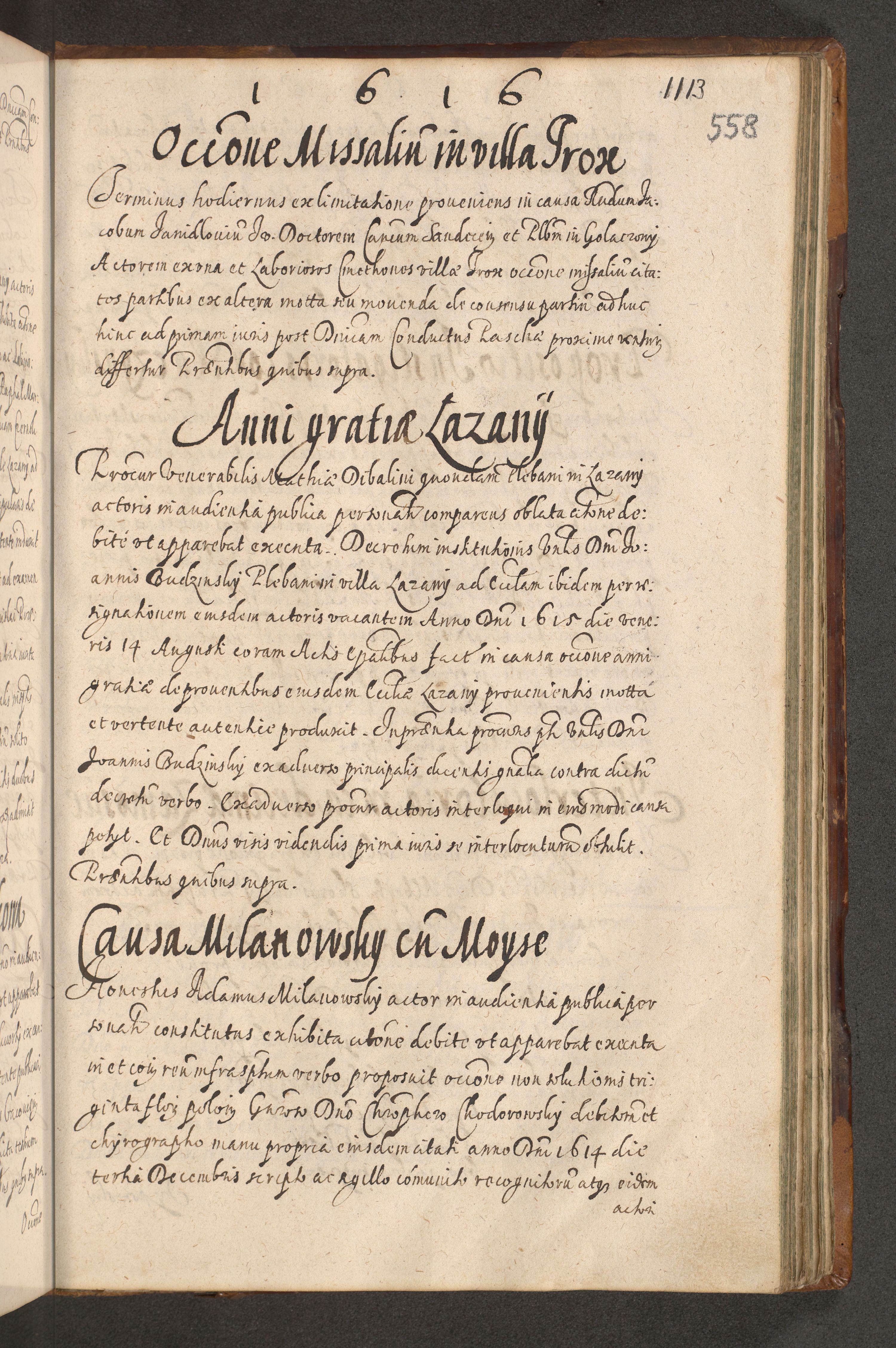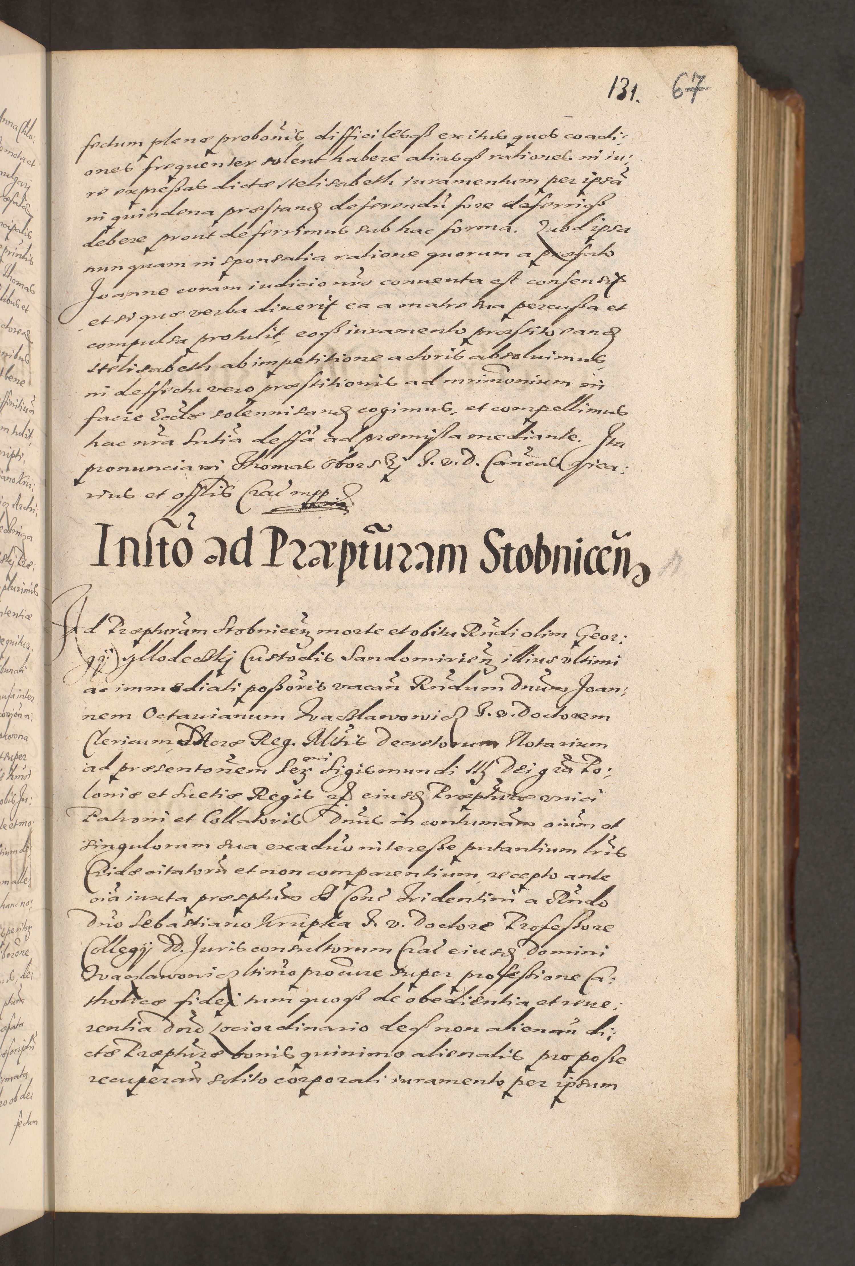 Illustrissimo et Reverendissimo in Christo Patre Domino Domino Petro Tylicki Dei et Apostolice Sedis Gratia Episcopo Cracoviensis Duce Severiensis Acta actorum causarum sententiarum tam interloquutoriarum quam definitivarum decretorum obligationum, quietationum, recognitionum, constitutionum procuratorum etc. etc. coram Admodum Reverendo Domino Thoma Oborski I. V. Doctore Canonico Vicario in Spiritualibus et Officiali generali Cracoviensis in anno Domini Millesimo Sexcentessimo Decimoquarto Cuius Indictio duodecima Pontificus SS. D. N. D. Pauli Divina providentia Papae quinti Anno decimo foeliciter incipiunt