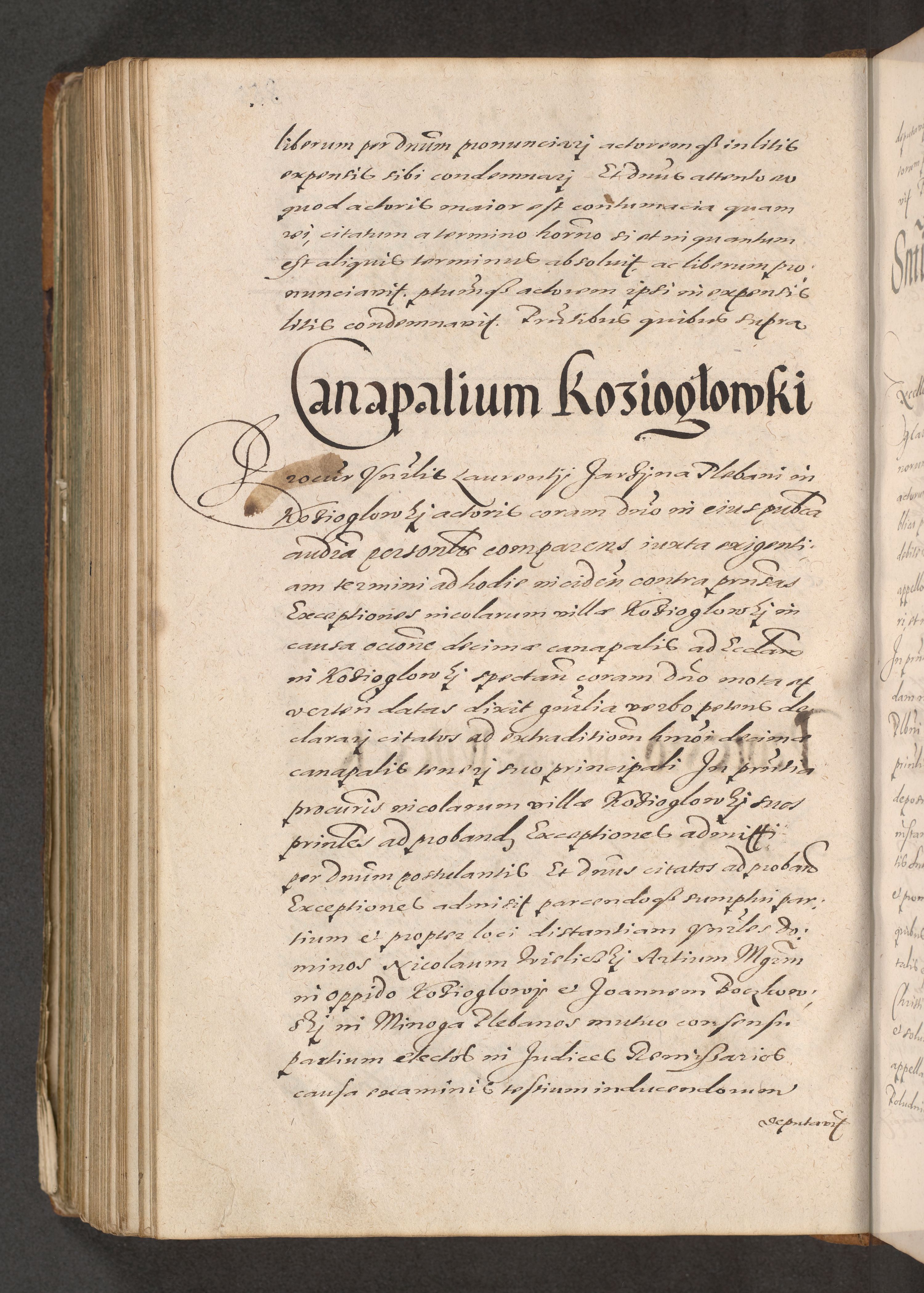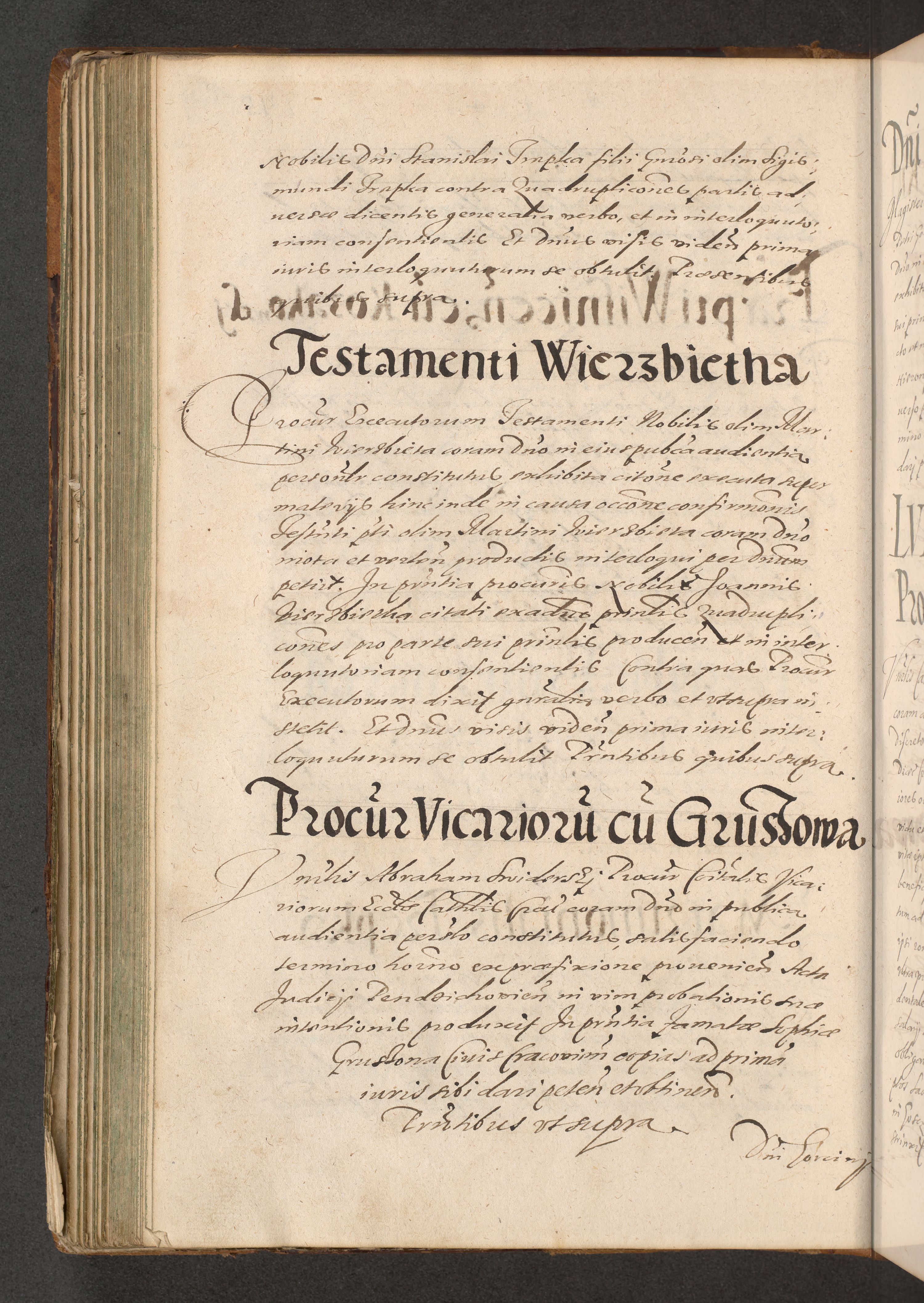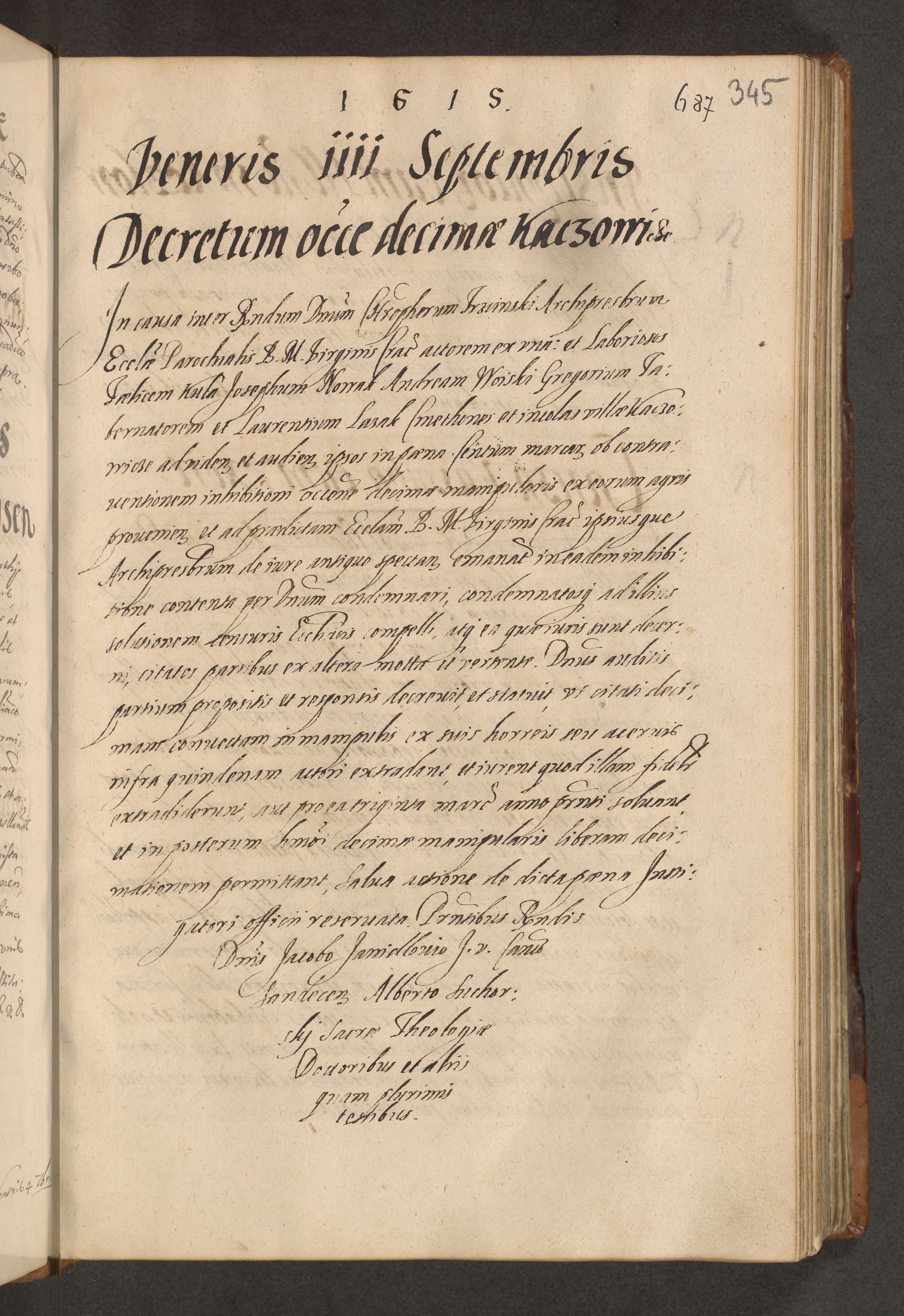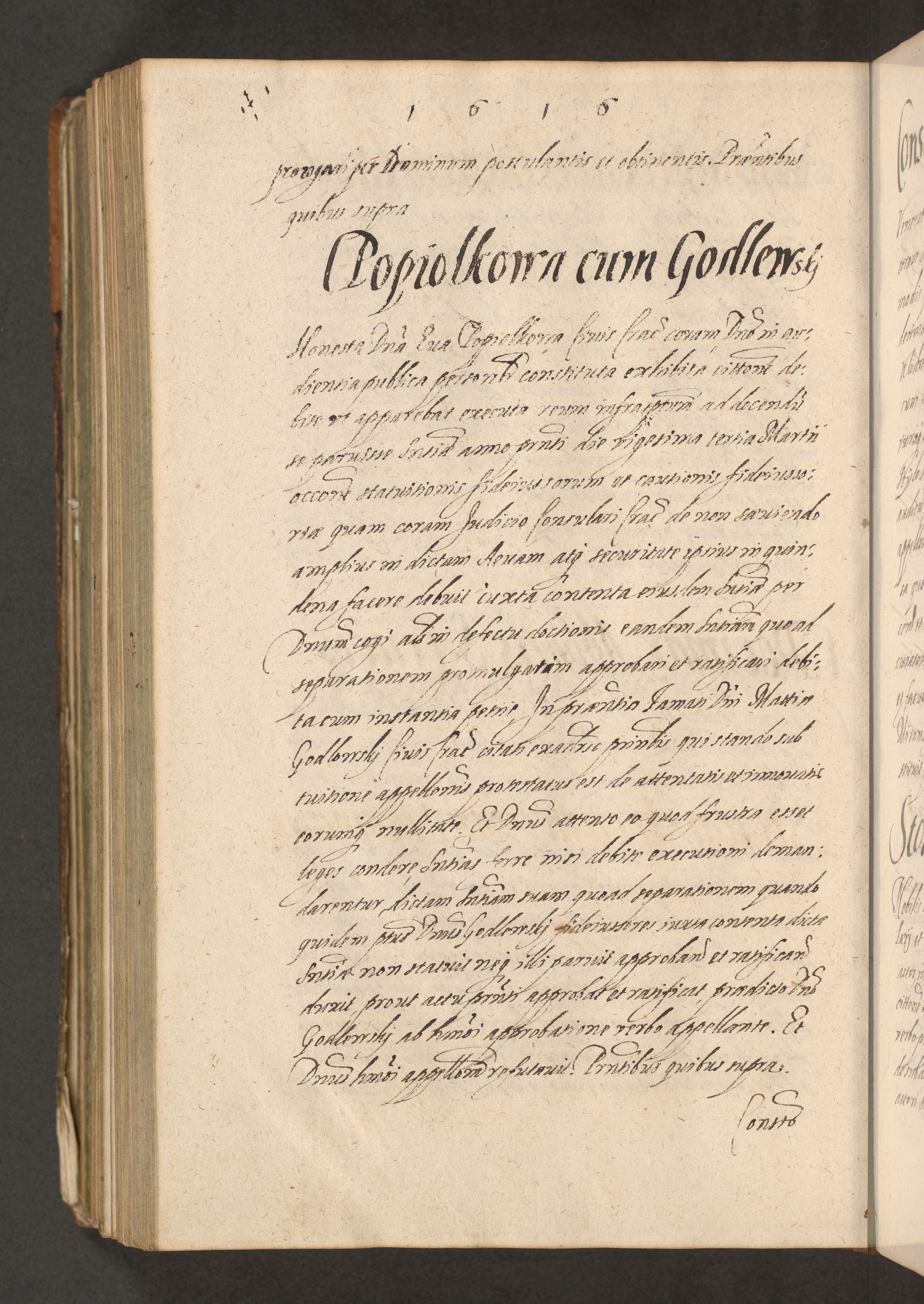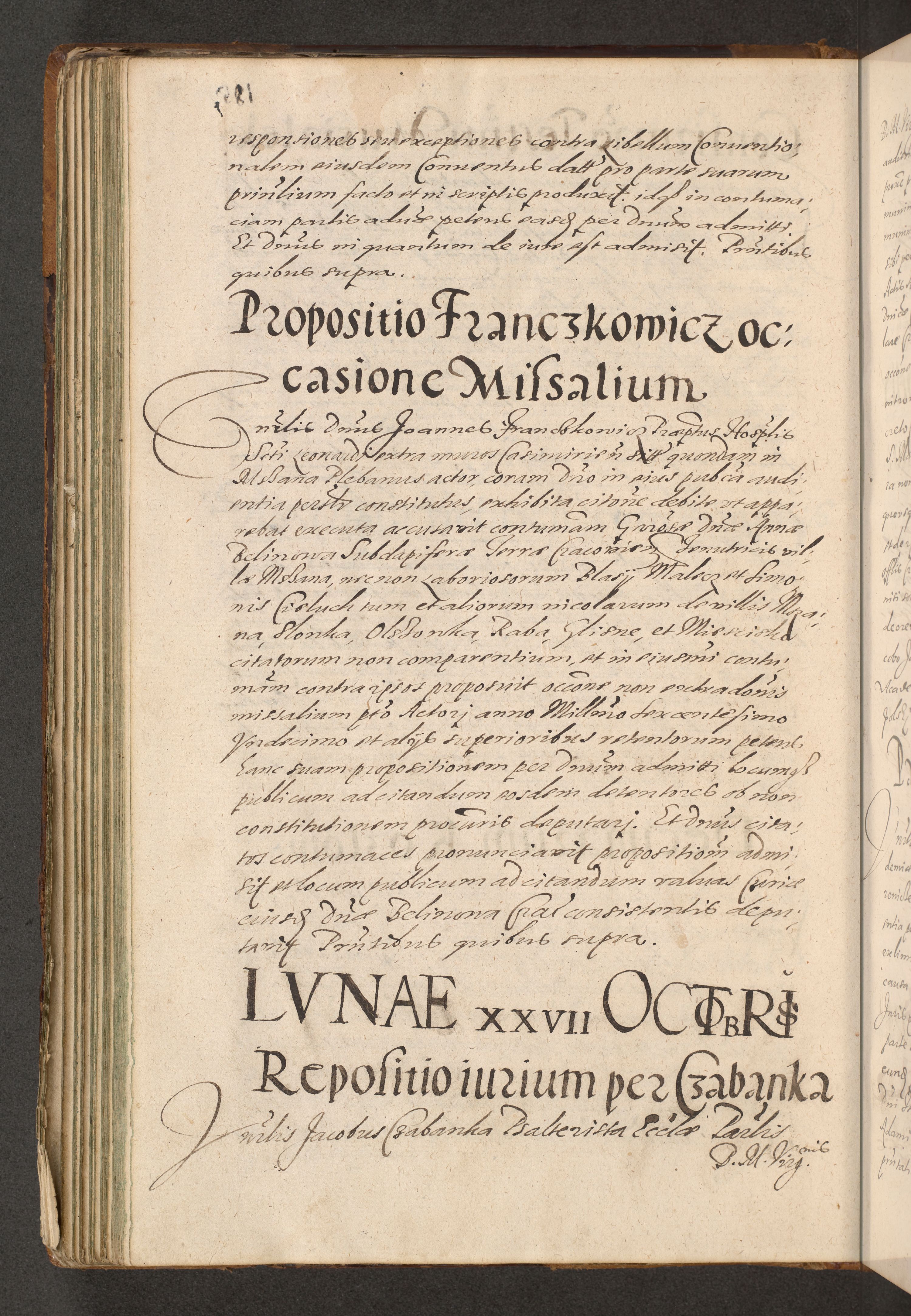Illustrissimo et Reverendissimo in Christo Patre Domino Domino Petro Tylicki Dei et Apostolice Sedis Gratia Episcopo Cracoviensis Duce Severiensis Acta actorum causarum sententiarum tam interloquutoriarum quam definitivarum decretorum obligationum, quietationum, recognitionum, constitutionum procuratorum etc. etc. coram Admodum Reverendo Domino Thoma Oborski I. V. Doctore Canonico Vicario in Spiritualibus et Officiali generali Cracoviensis in anno Domini Millesimo Sexcentessimo Decimoquarto Cuius Indictio duodecima Pontificus SS. D. N. D. Pauli Divina providentia Papae quinti Anno decimo foeliciter incipiunt