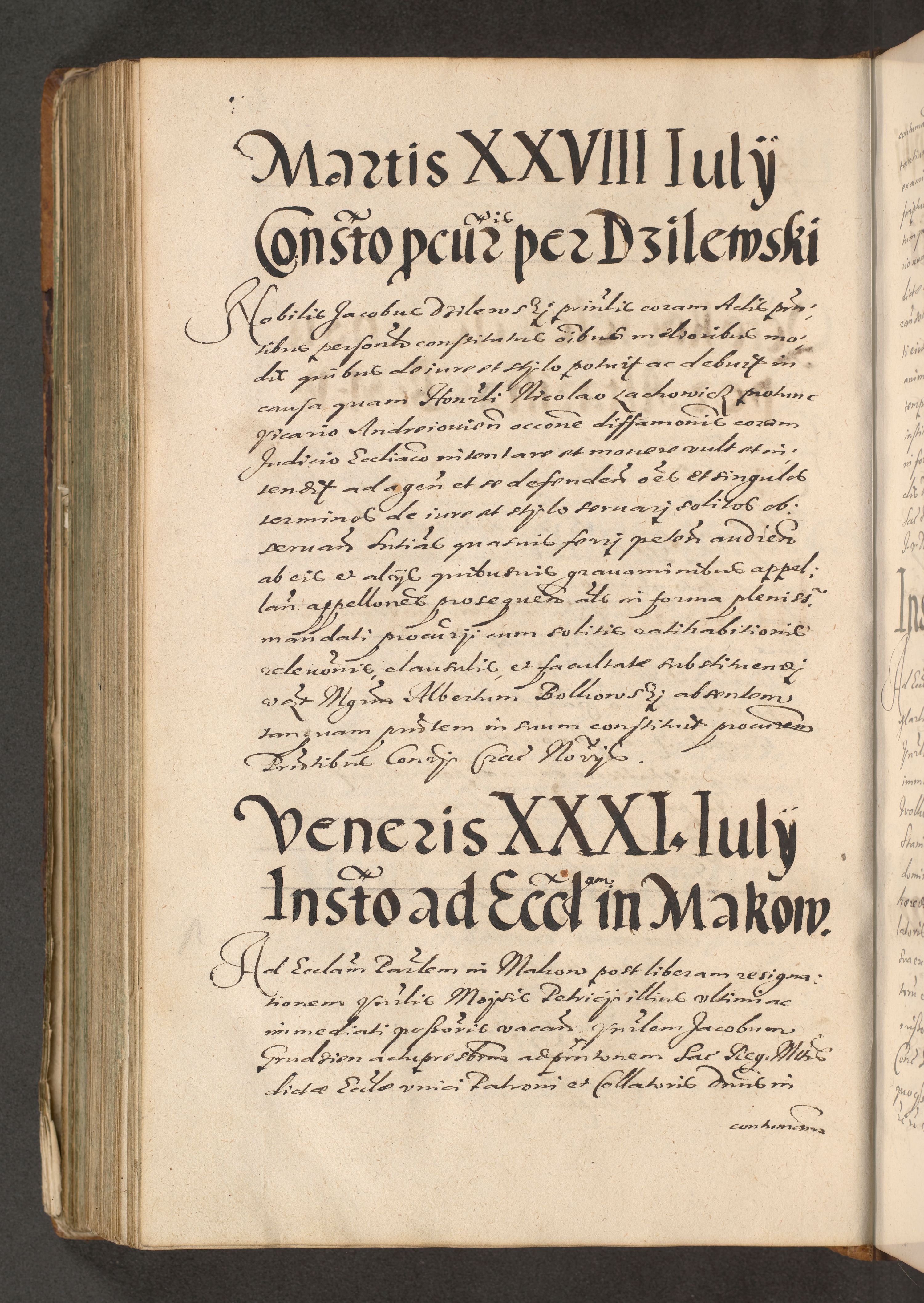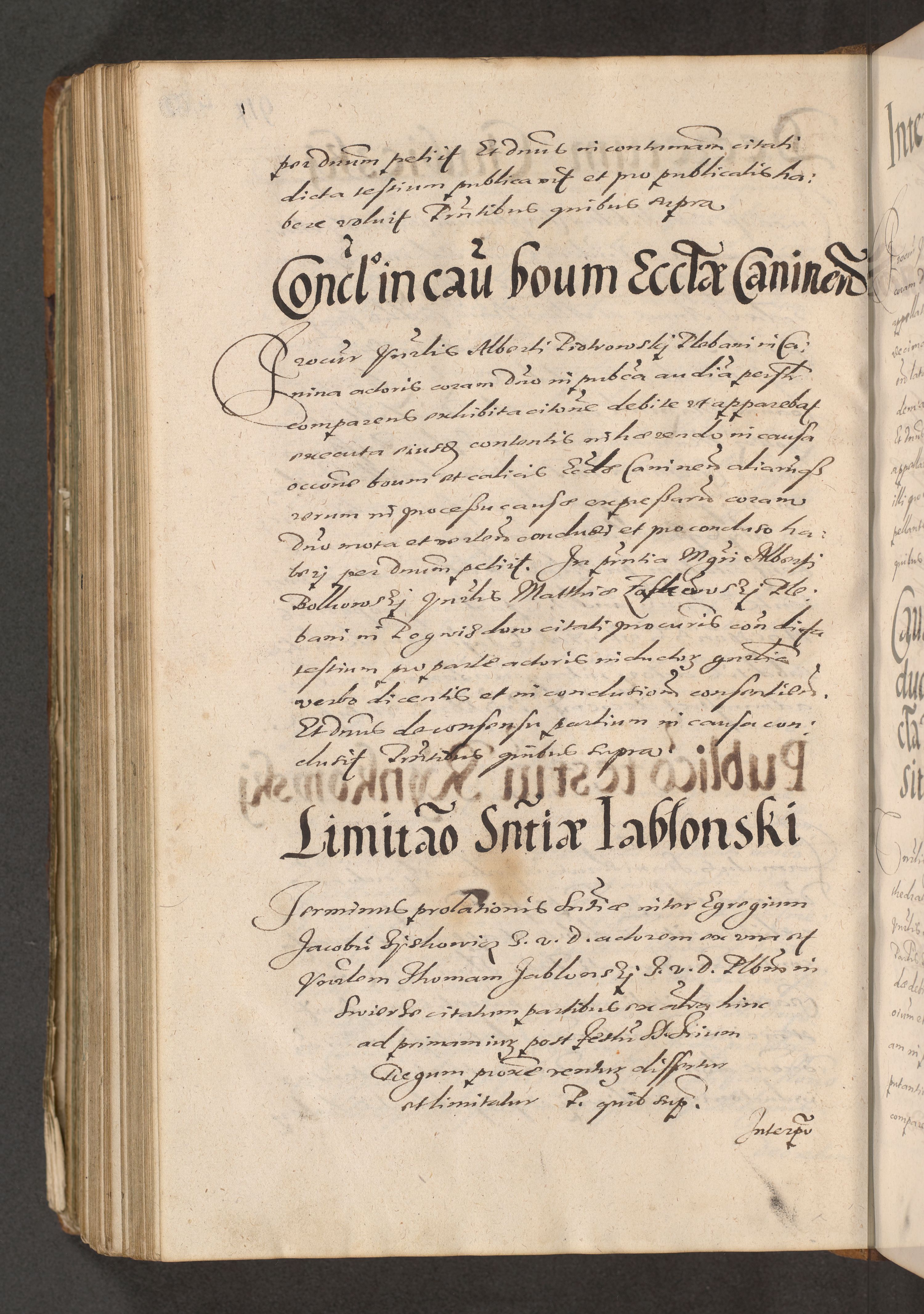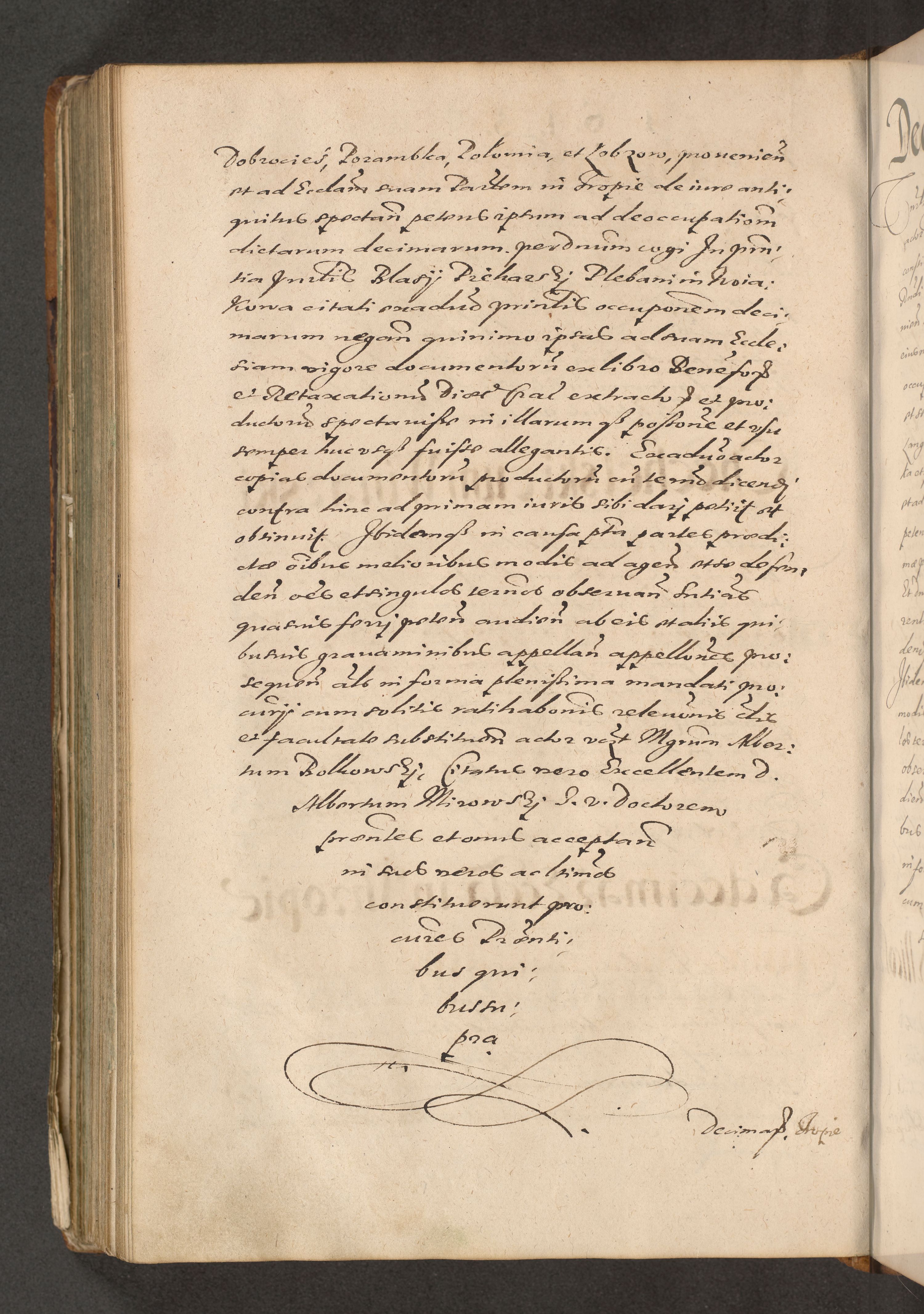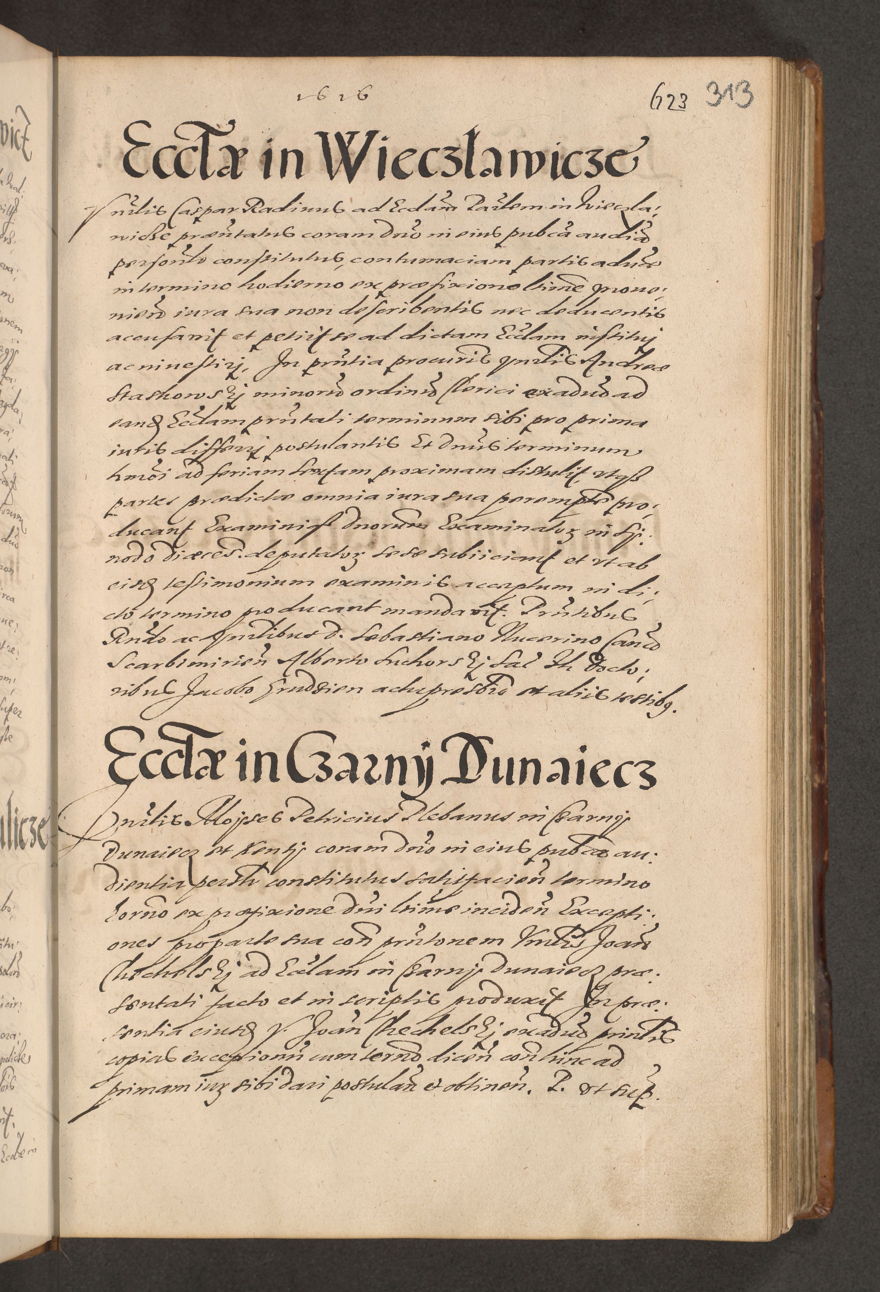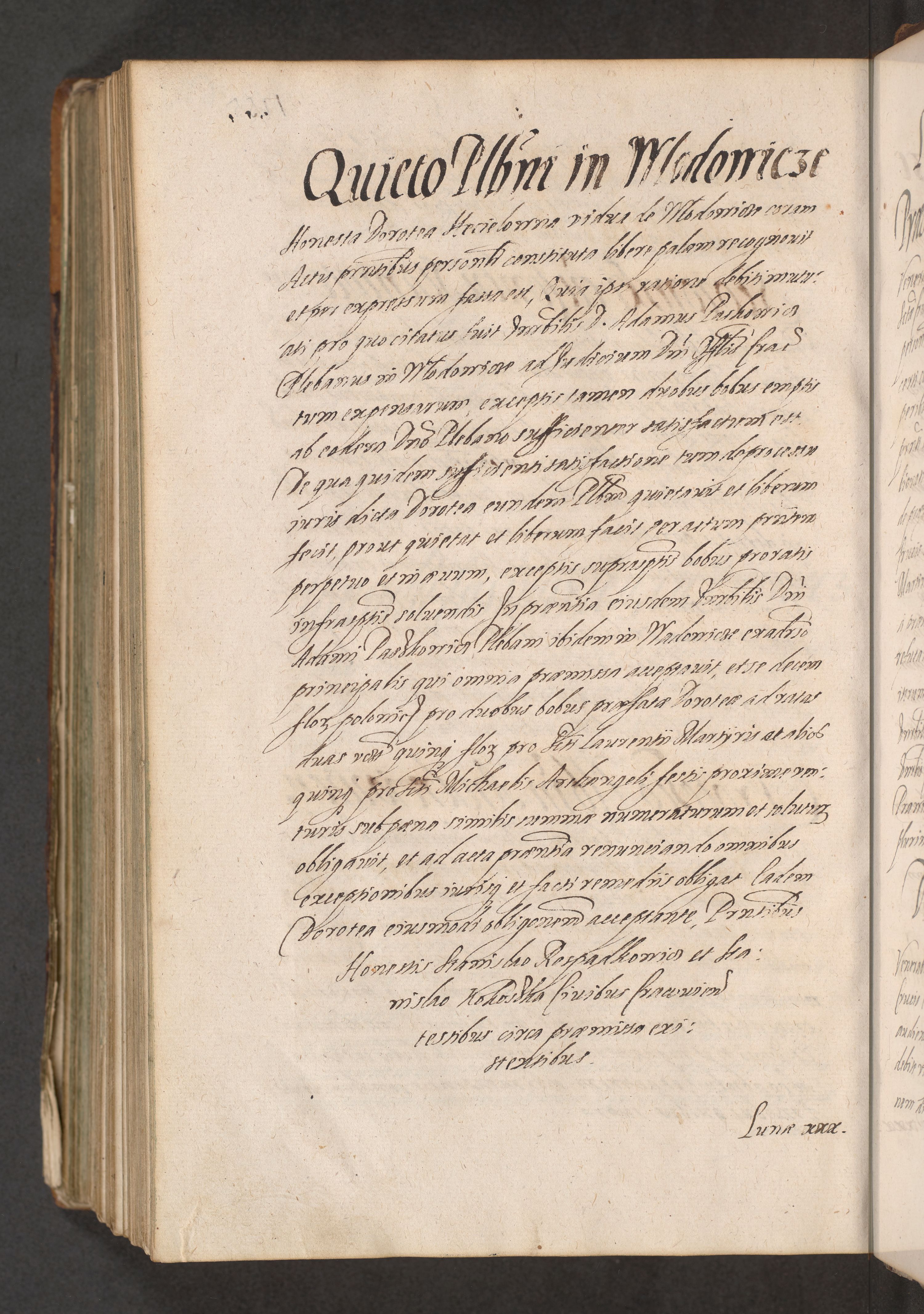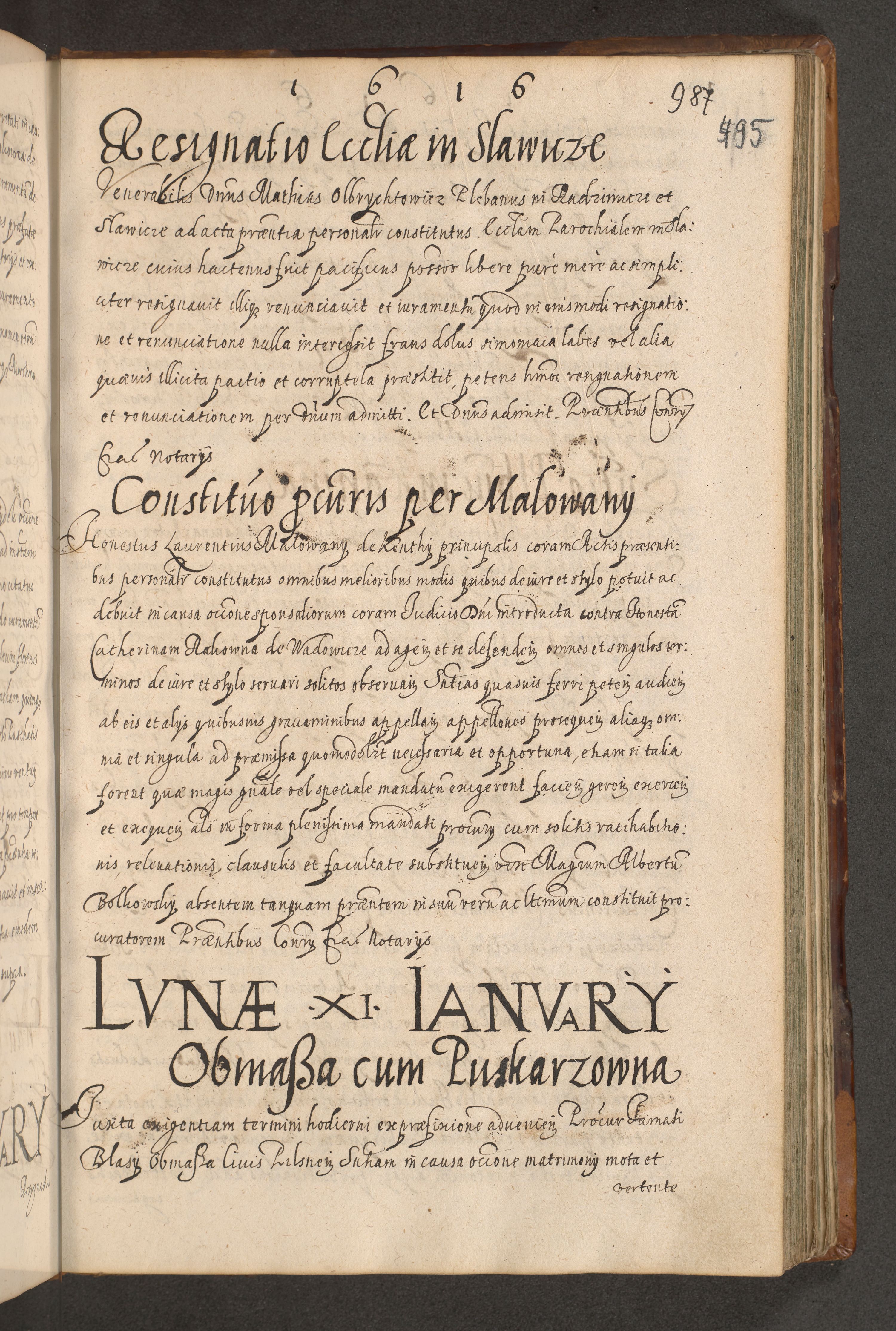 Illustrissimo et Reverendissimo in Christo Patre Domino Domino Petro Tylicki Dei et Apostolice Sedis Gratia Episcopo Cracoviensis Duce Severiensis Acta actorum causarum sententiarum tam interloquutoriarum quam definitivarum decretorum obligationum, quietationum, recognitionum, constitutionum procuratorum etc. etc. coram Admodum Reverendo Domino Thoma Oborski I. V. Doctore Canonico Vicario in Spiritualibus et Officiali generali Cracoviensis in anno Domini Millesimo Sexcentessimo Decimoquarto Cuius Indictio duodecima Pontificus SS. D. N. D. Pauli Divina providentia Papae quinti Anno decimo foeliciter incipiunt