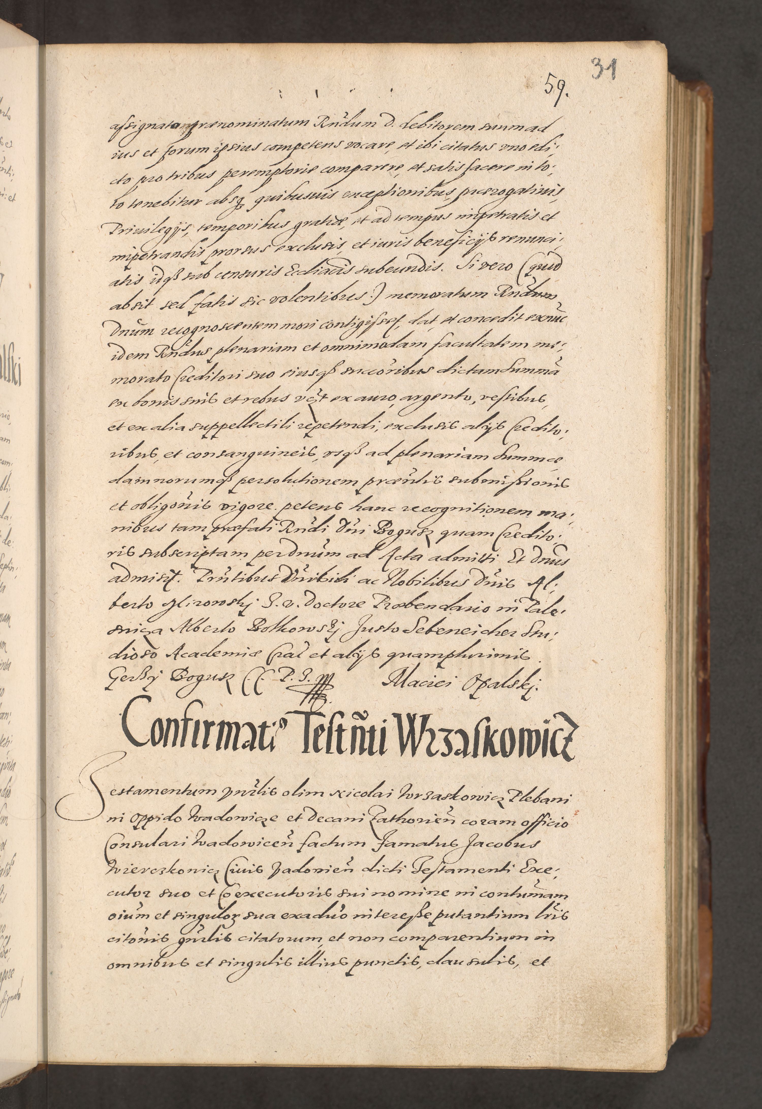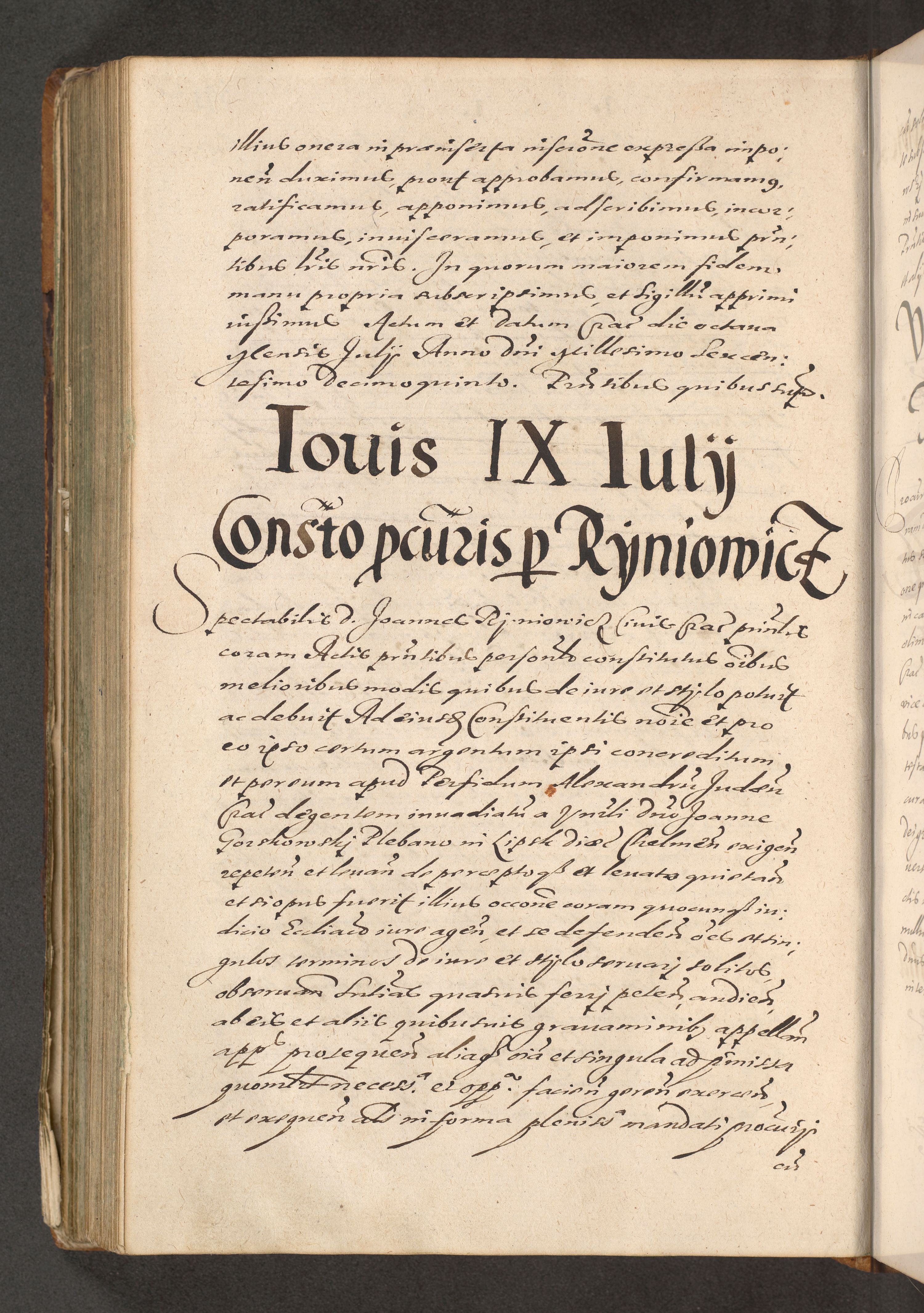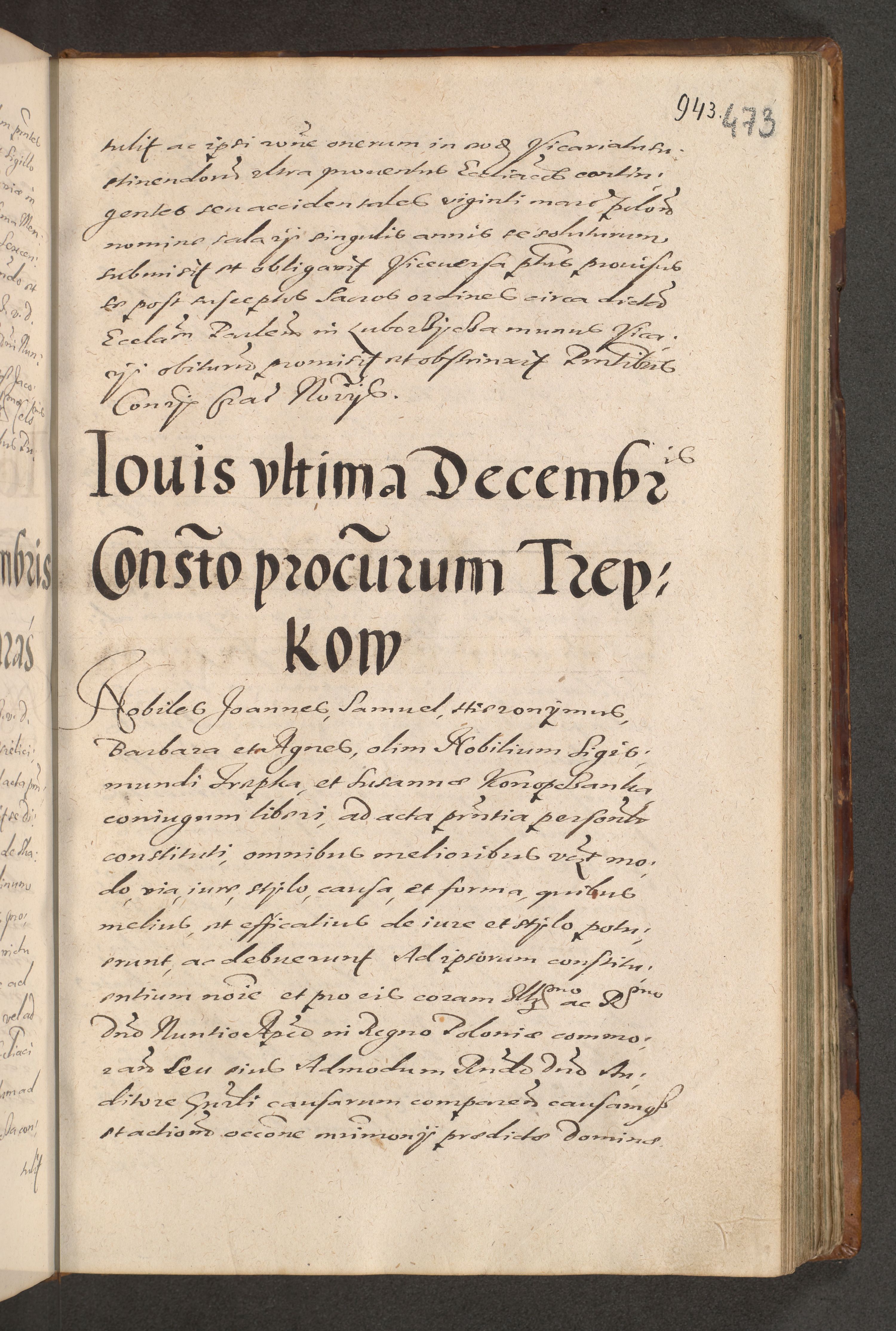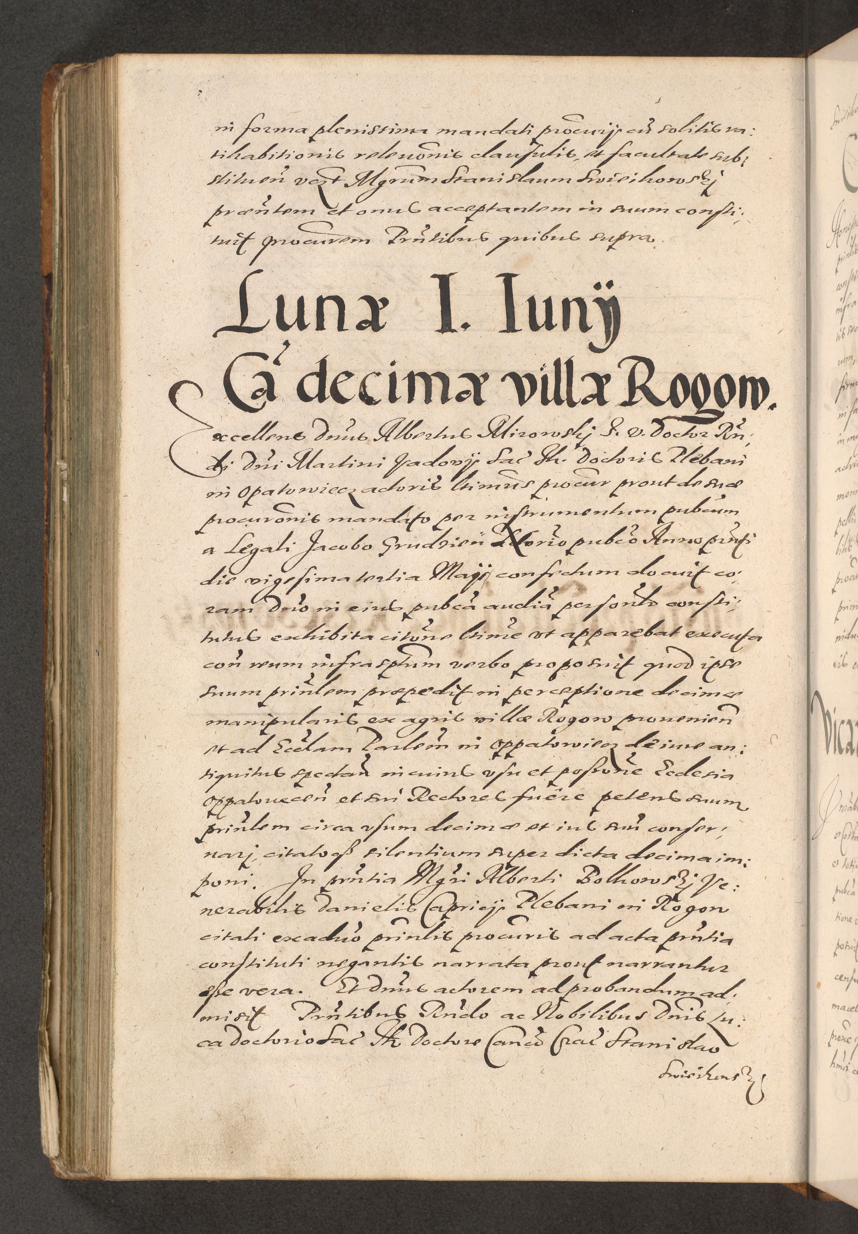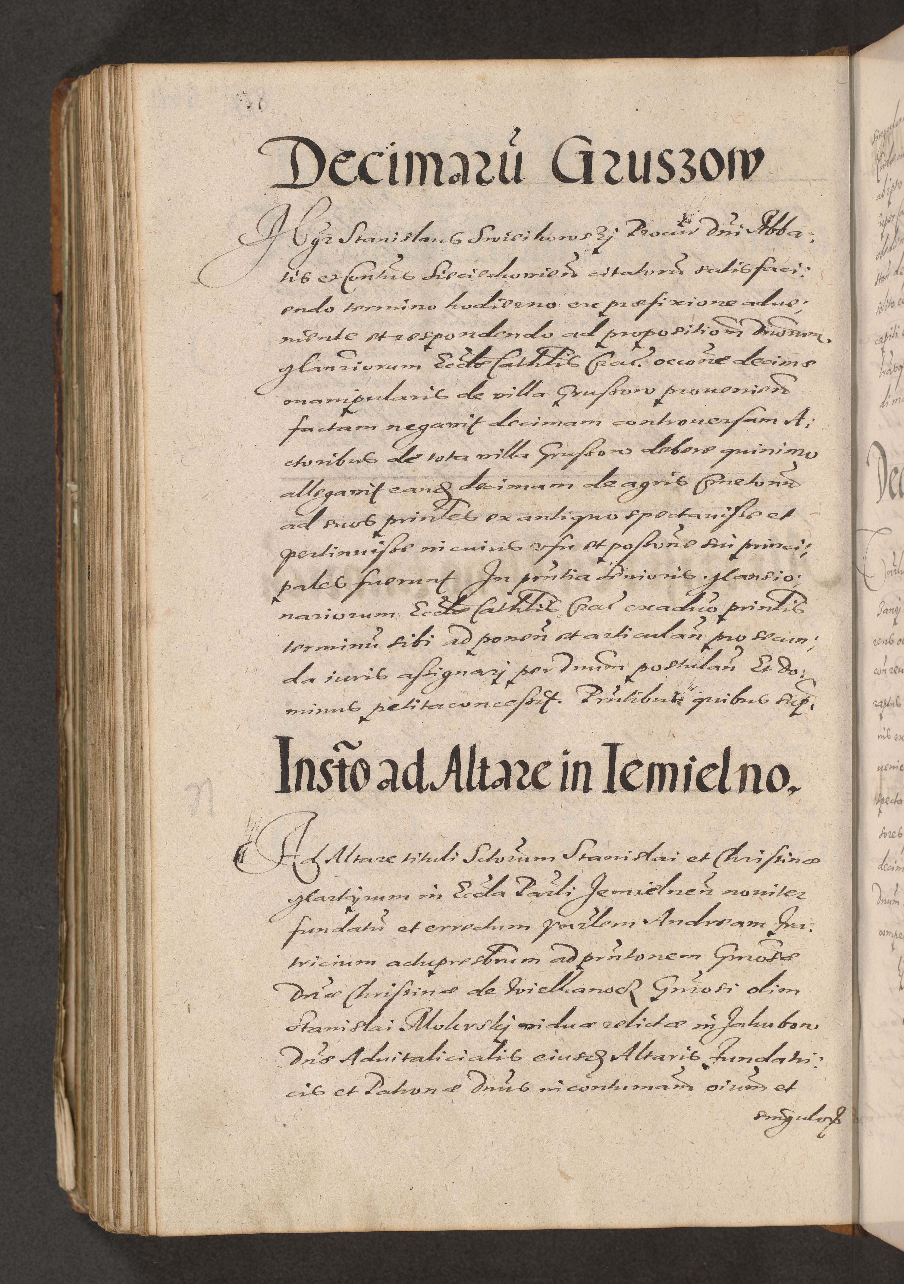 Illustrissimo et Reverendissimo in Christo Patre Domino Domino Petro Tylicki Dei et Apostolice Sedis Gratia Episcopo Cracoviensis Duce Severiensis Acta actorum causarum sententiarum tam interloquutoriarum quam definitivarum decretorum obligationum, quietationum, recognitionum, constitutionum procuratorum etc. etc. coram Admodum Reverendo Domino Thoma Oborski I. V. Doctore Canonico Vicario in Spiritualibus et Officiali generali Cracoviensis in anno Domini Millesimo Sexcentessimo Decimoquarto Cuius Indictio duodecima Pontificus SS. D. N. D. Pauli Divina providentia Papae quinti Anno decimo foeliciter incipiunt