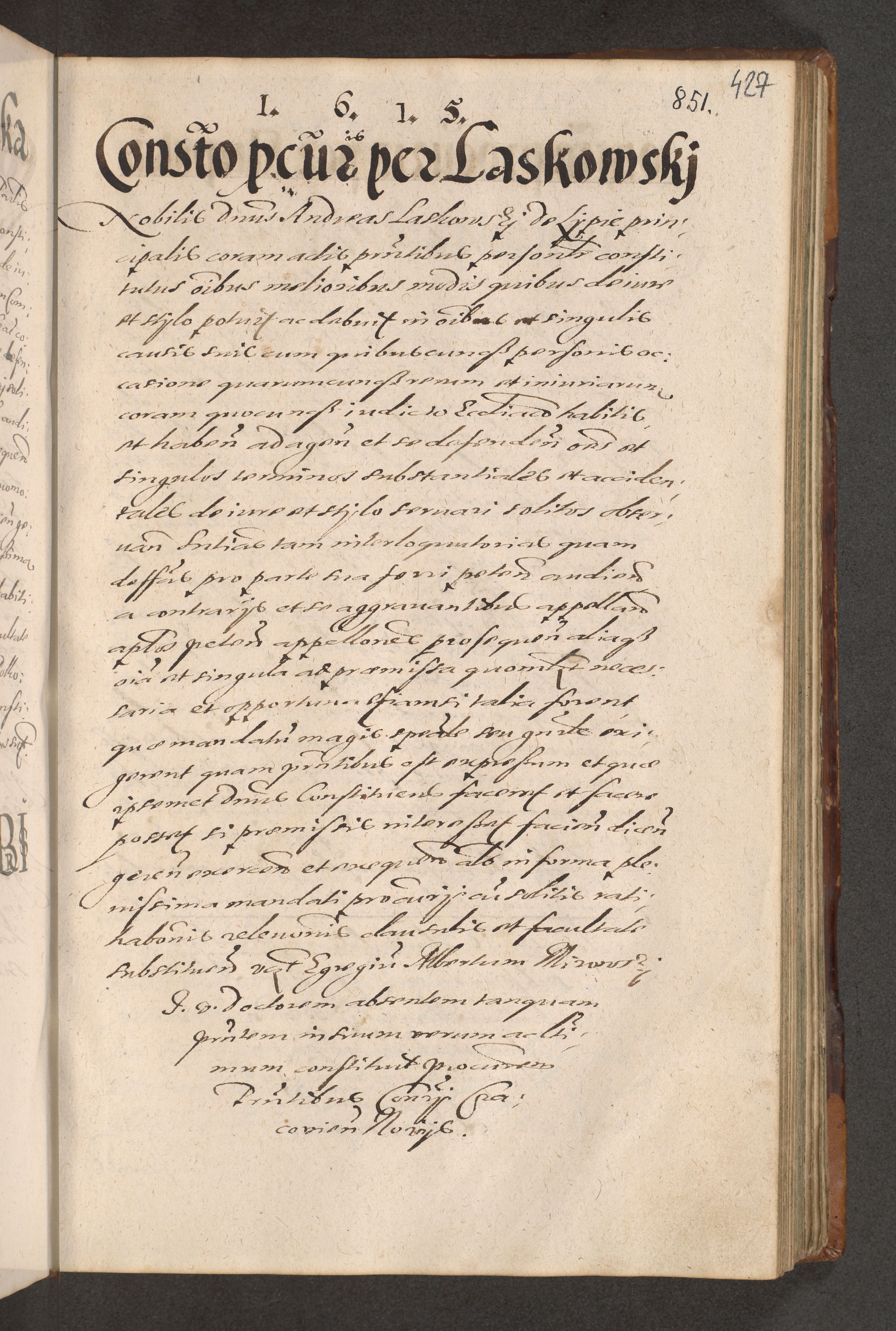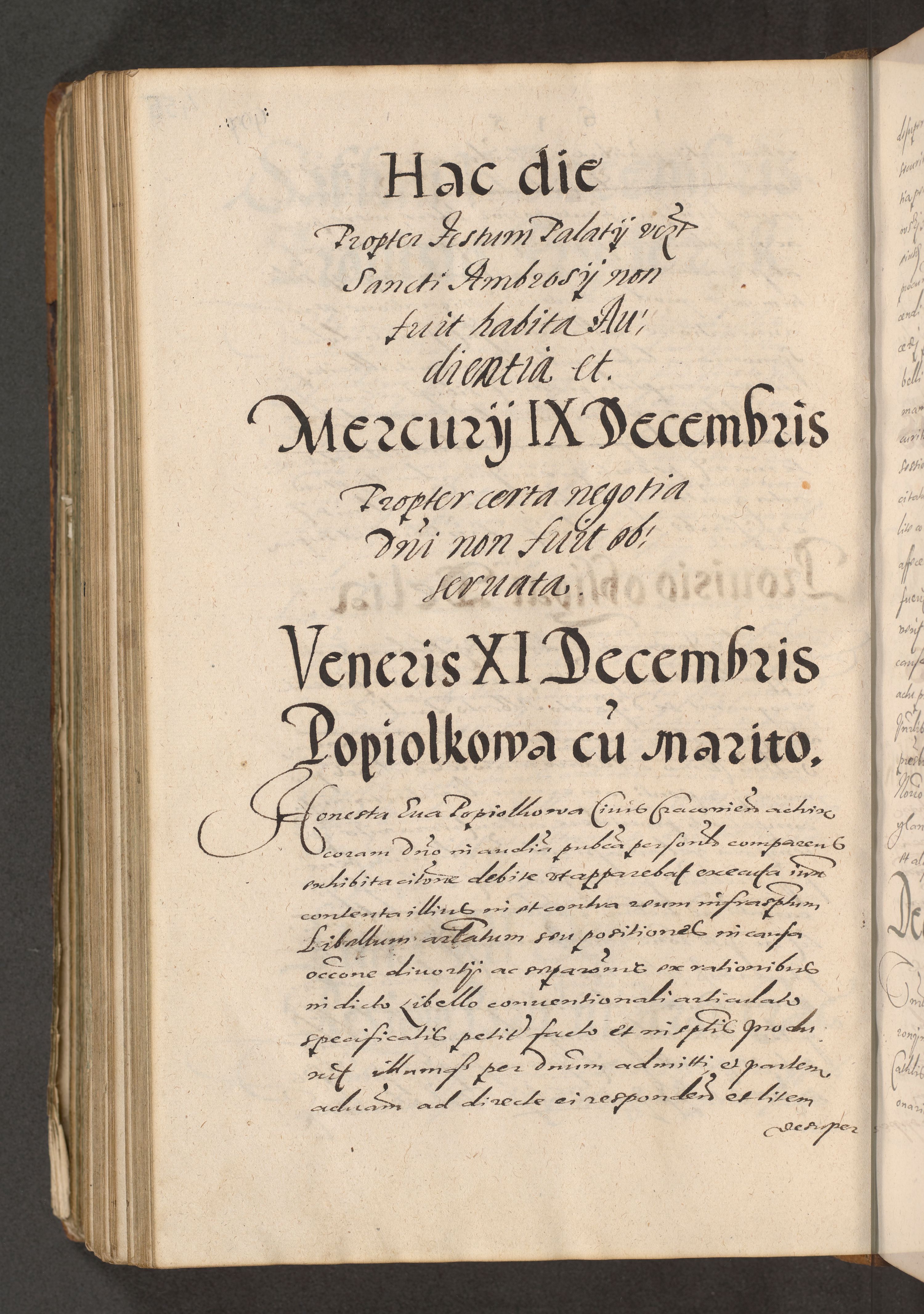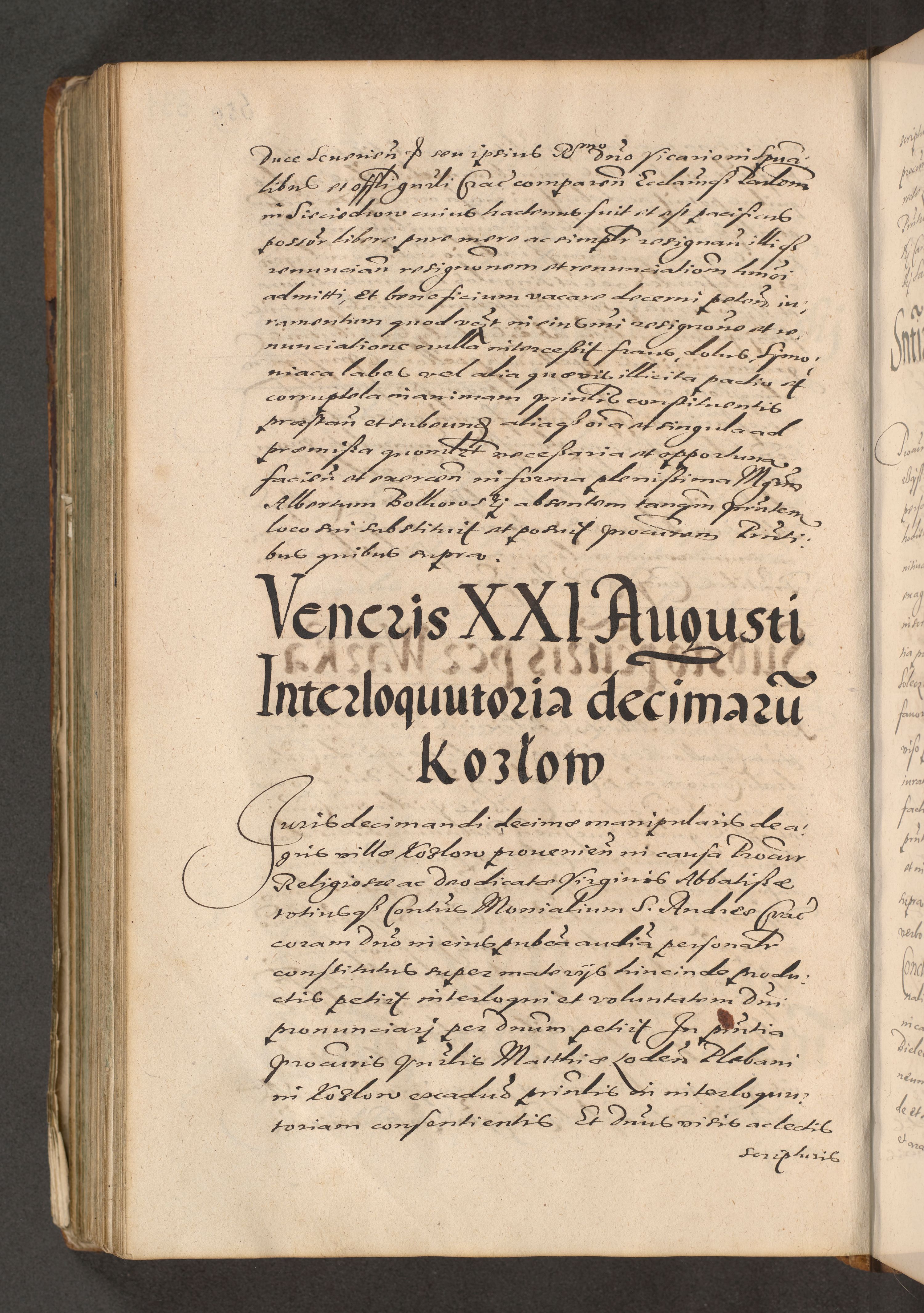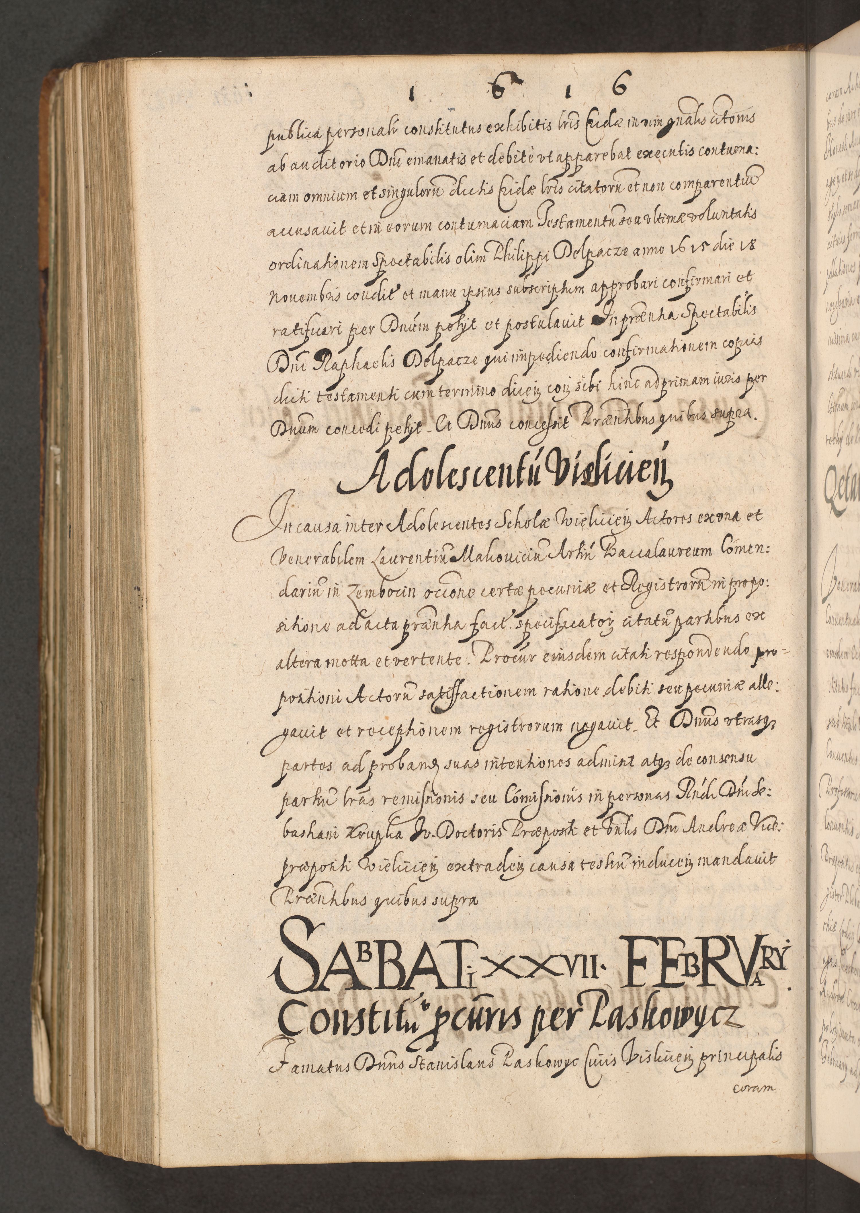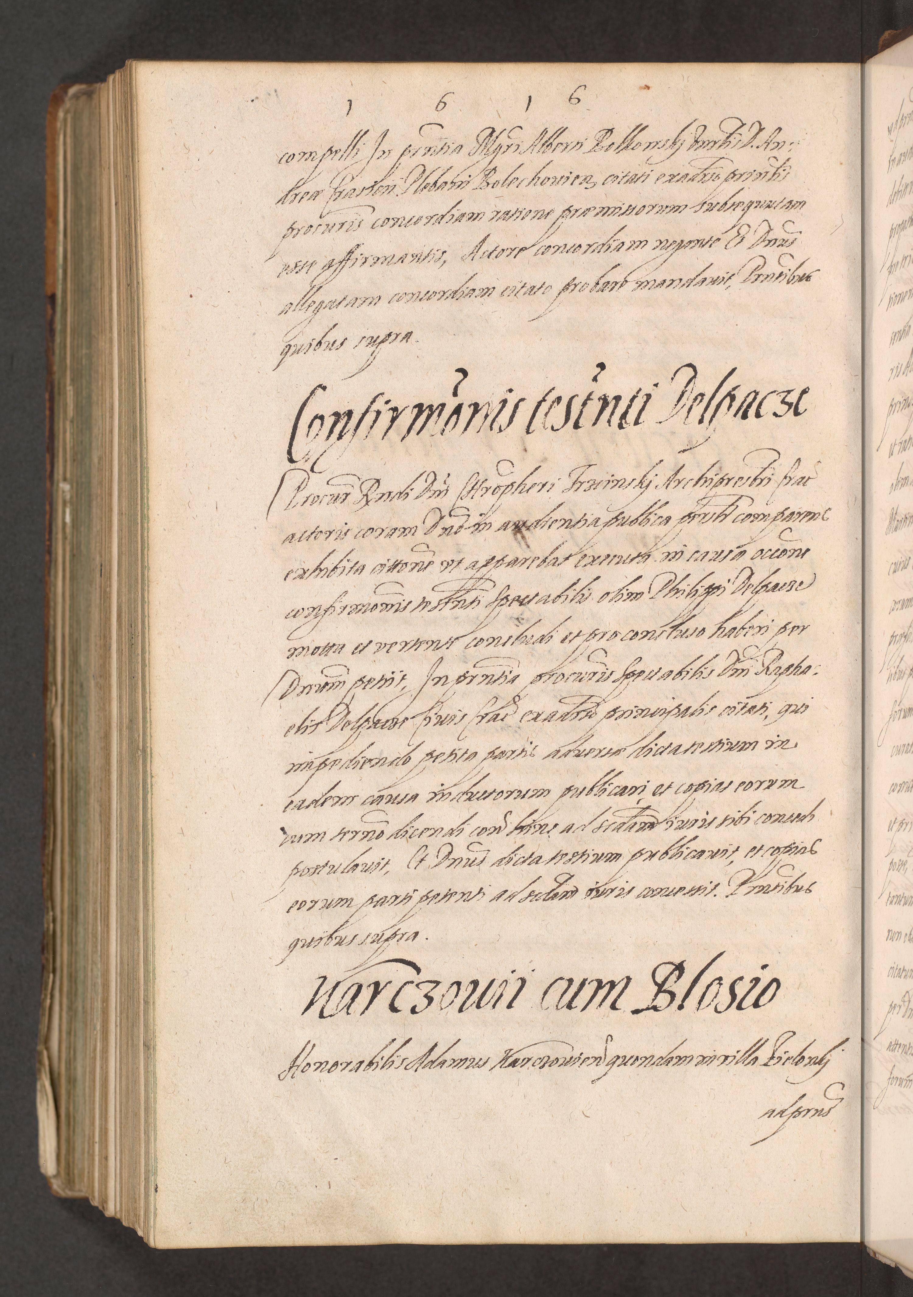 Illustrissimo et Reverendissimo in Christo Patre Domino Domino Petro Tylicki Dei et Apostolice Sedis Gratia Episcopo Cracoviensis Duce Severiensis Acta actorum causarum sententiarum tam interloquutoriarum quam definitivarum decretorum obligationum, quietationum, recognitionum, constitutionum procuratorum etc. etc. coram Admodum Reverendo Domino Thoma Oborski I. V. Doctore Canonico Vicario in Spiritualibus et Officiali generali Cracoviensis in anno Domini Millesimo Sexcentessimo Decimoquarto Cuius Indictio duodecima Pontificus SS. D. N. D. Pauli Divina providentia Papae quinti Anno decimo foeliciter incipiunt