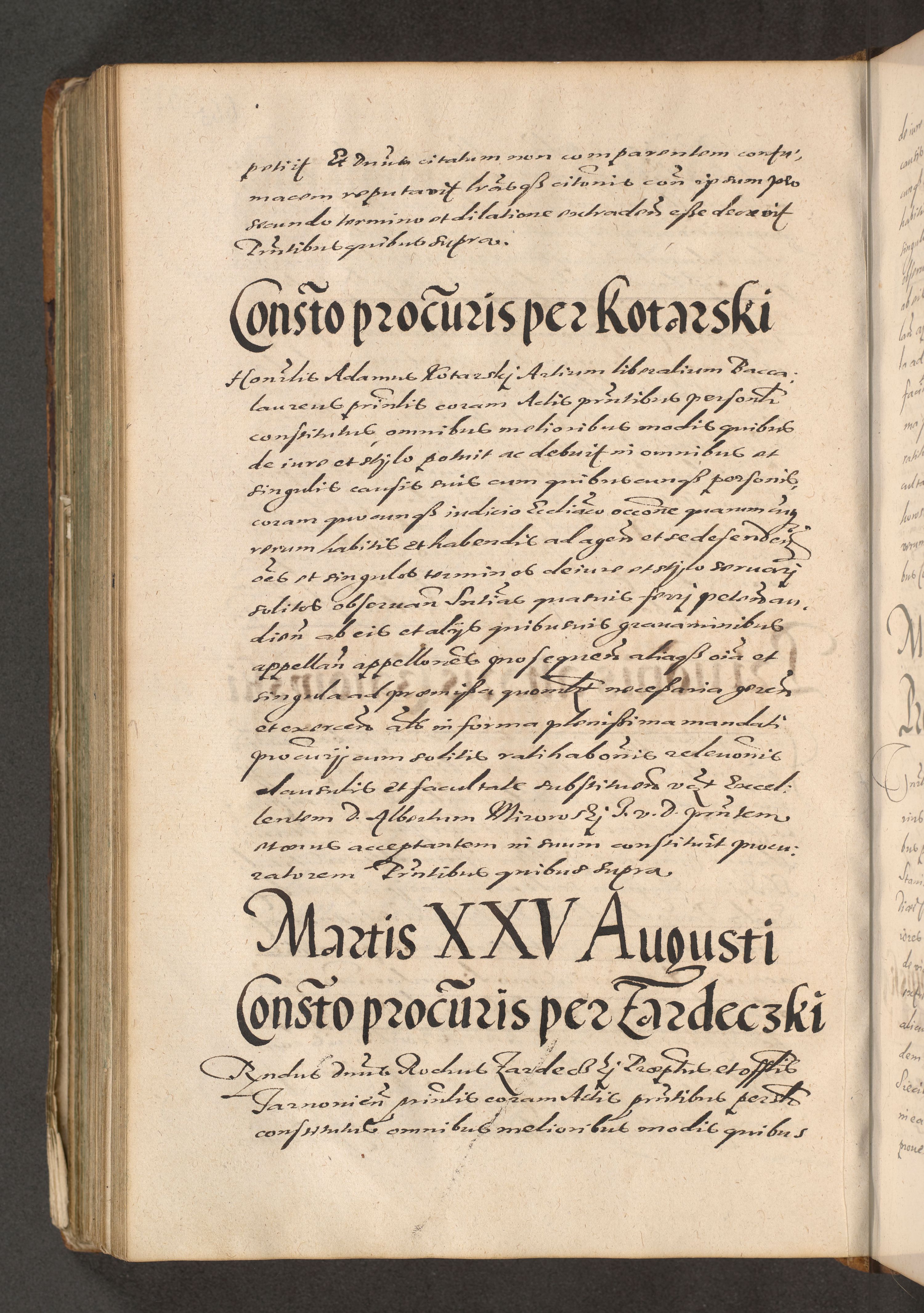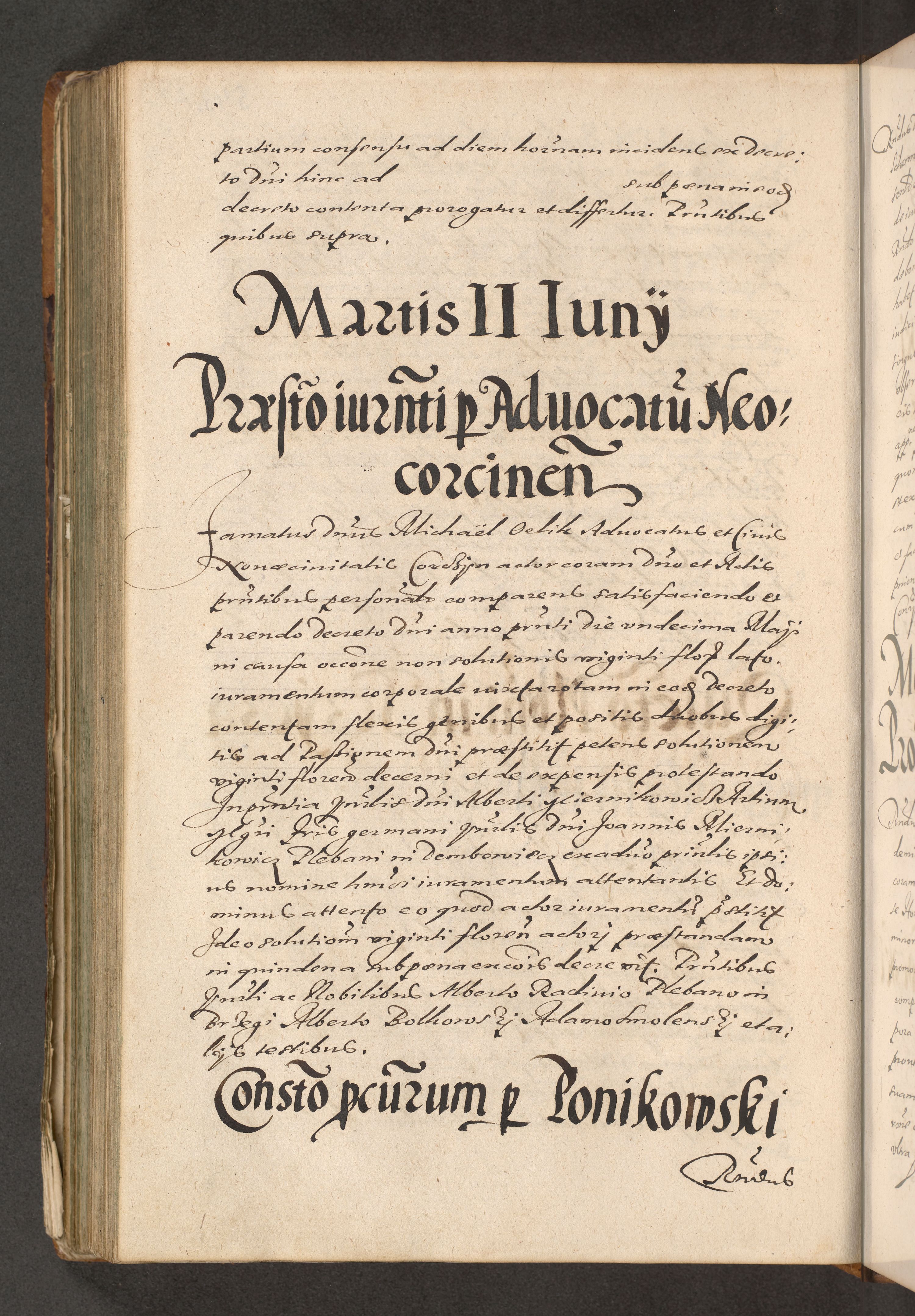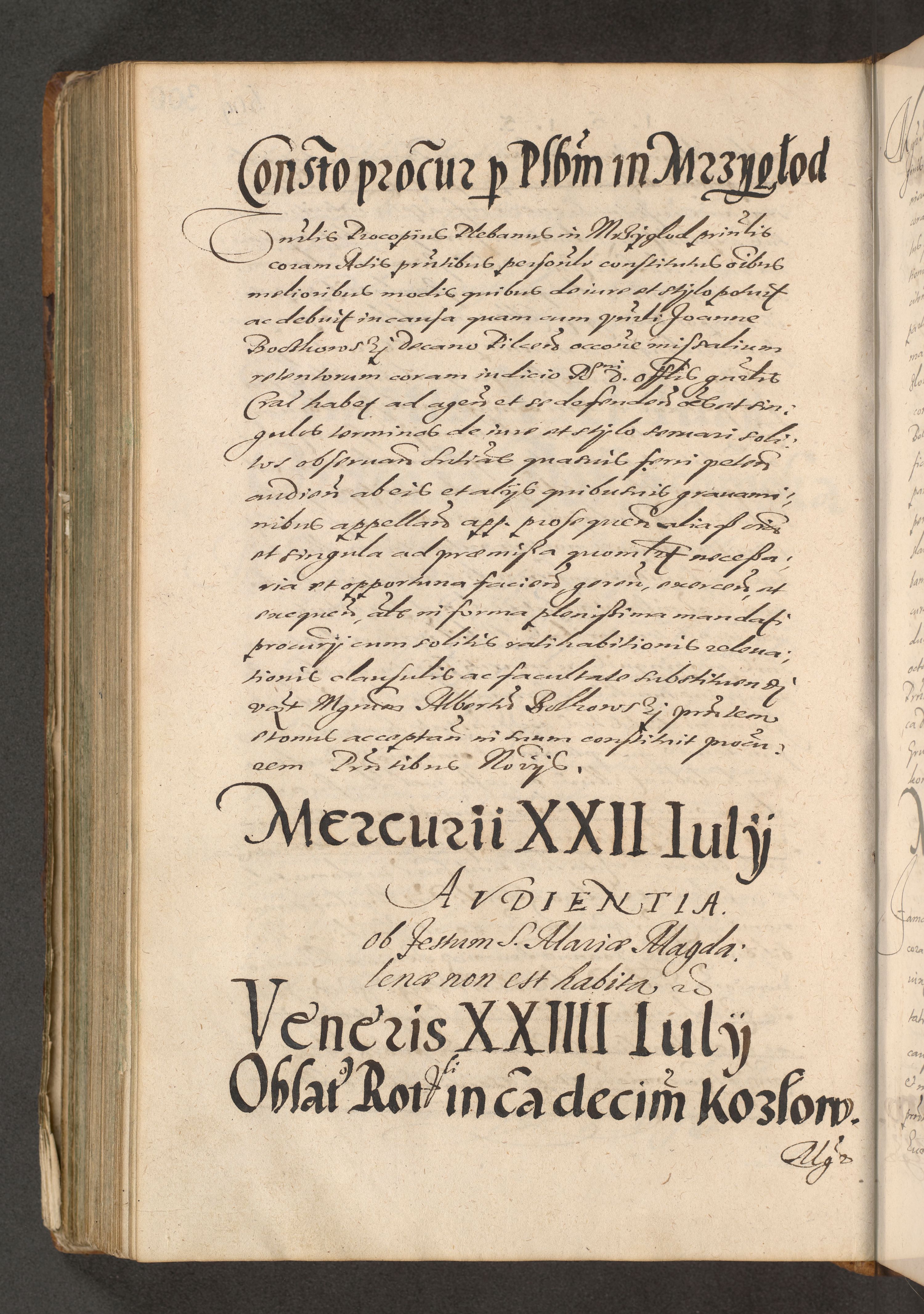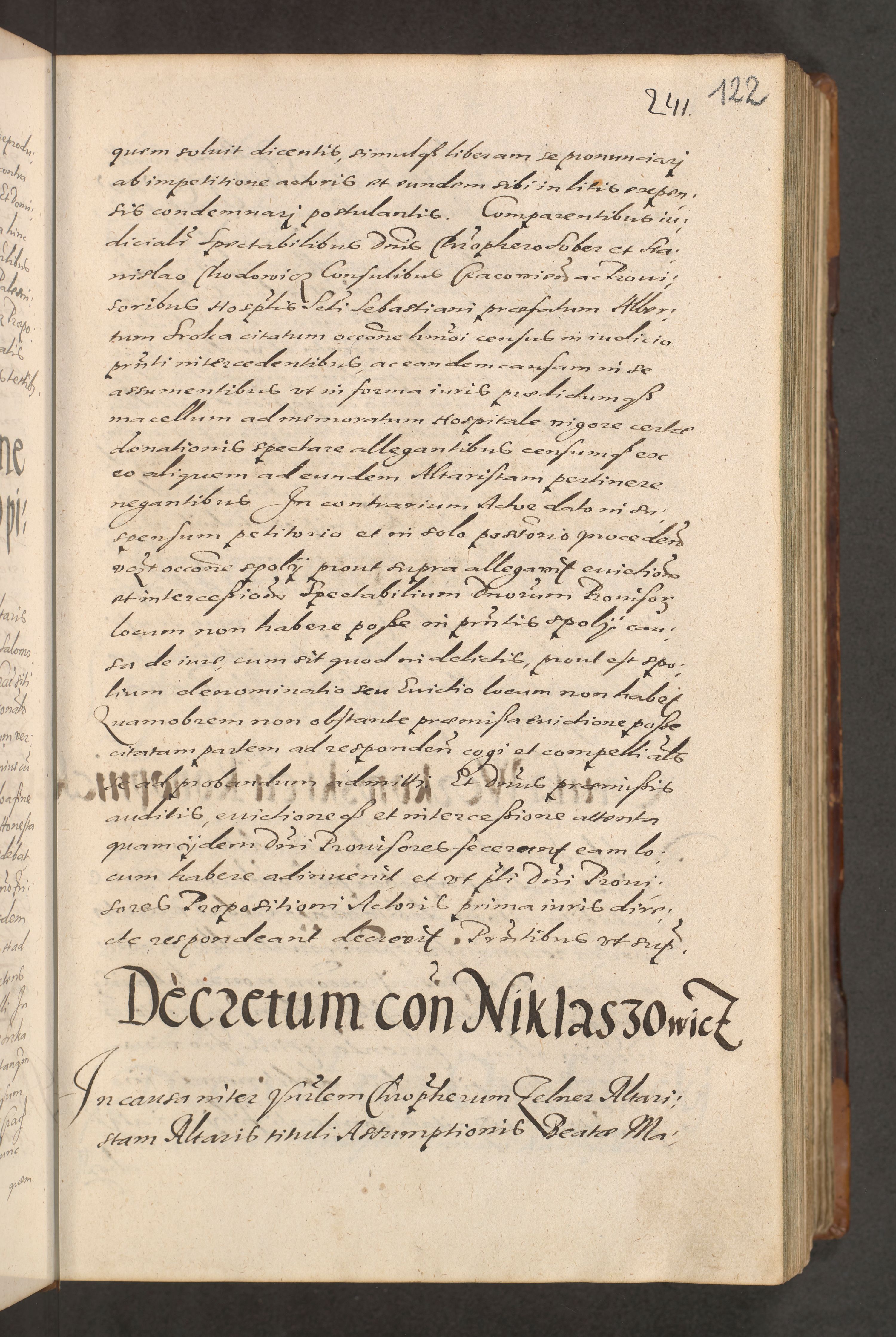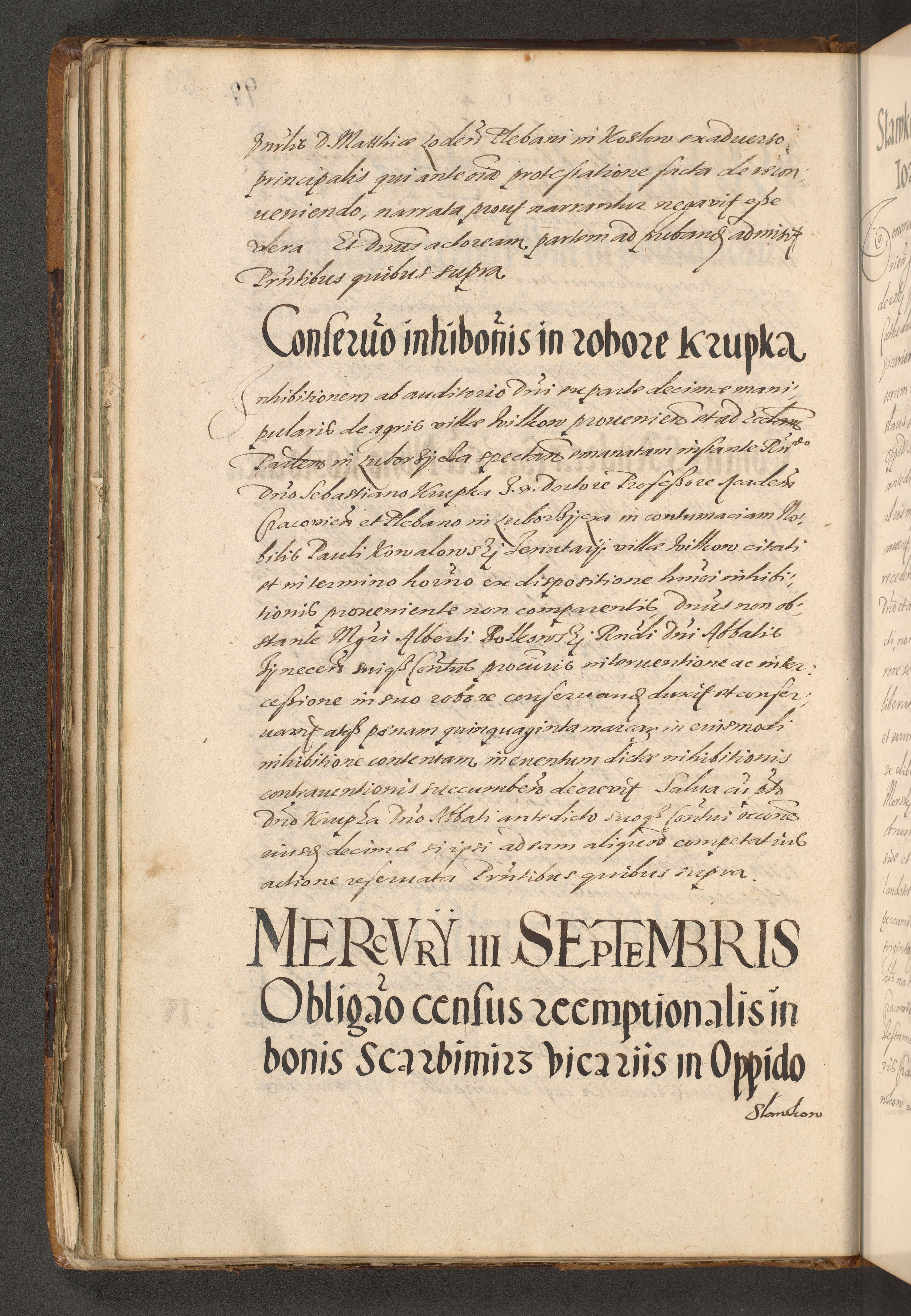 Illustrissimo et Reverendissimo in Christo Patre Domino Domino Petro Tylicki Dei et Apostolice Sedis Gratia Episcopo Cracoviensis Duce Severiensis Acta actorum causarum sententiarum tam interloquutoriarum quam definitivarum decretorum obligationum, quietationum, recognitionum, constitutionum procuratorum etc. etc. coram Admodum Reverendo Domino Thoma Oborski I. V. Doctore Canonico Vicario in Spiritualibus et Officiali generali Cracoviensis in anno Domini Millesimo Sexcentessimo Decimoquarto Cuius Indictio duodecima Pontificus SS. D. N. D. Pauli Divina providentia Papae quinti Anno decimo foeliciter incipiunt