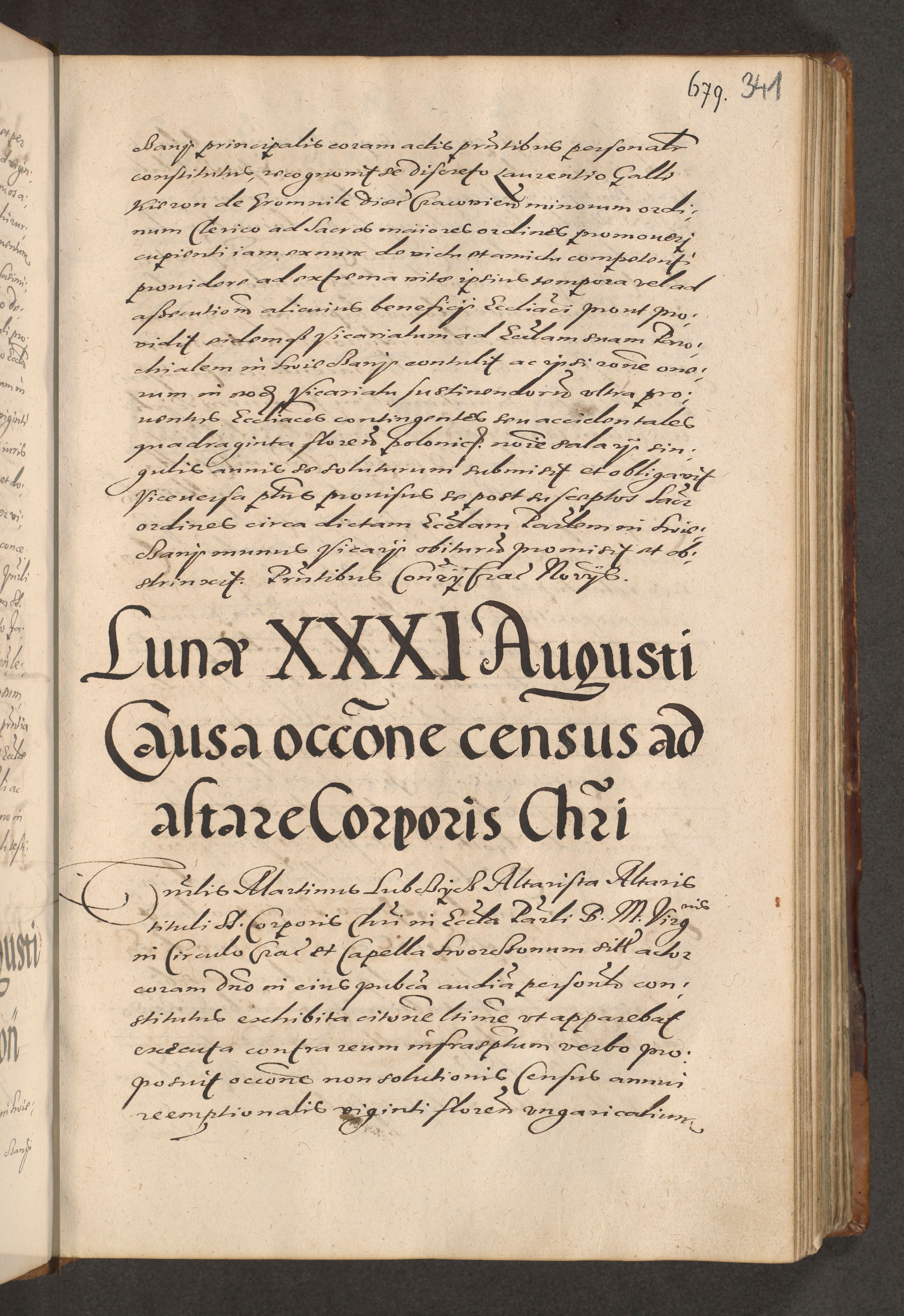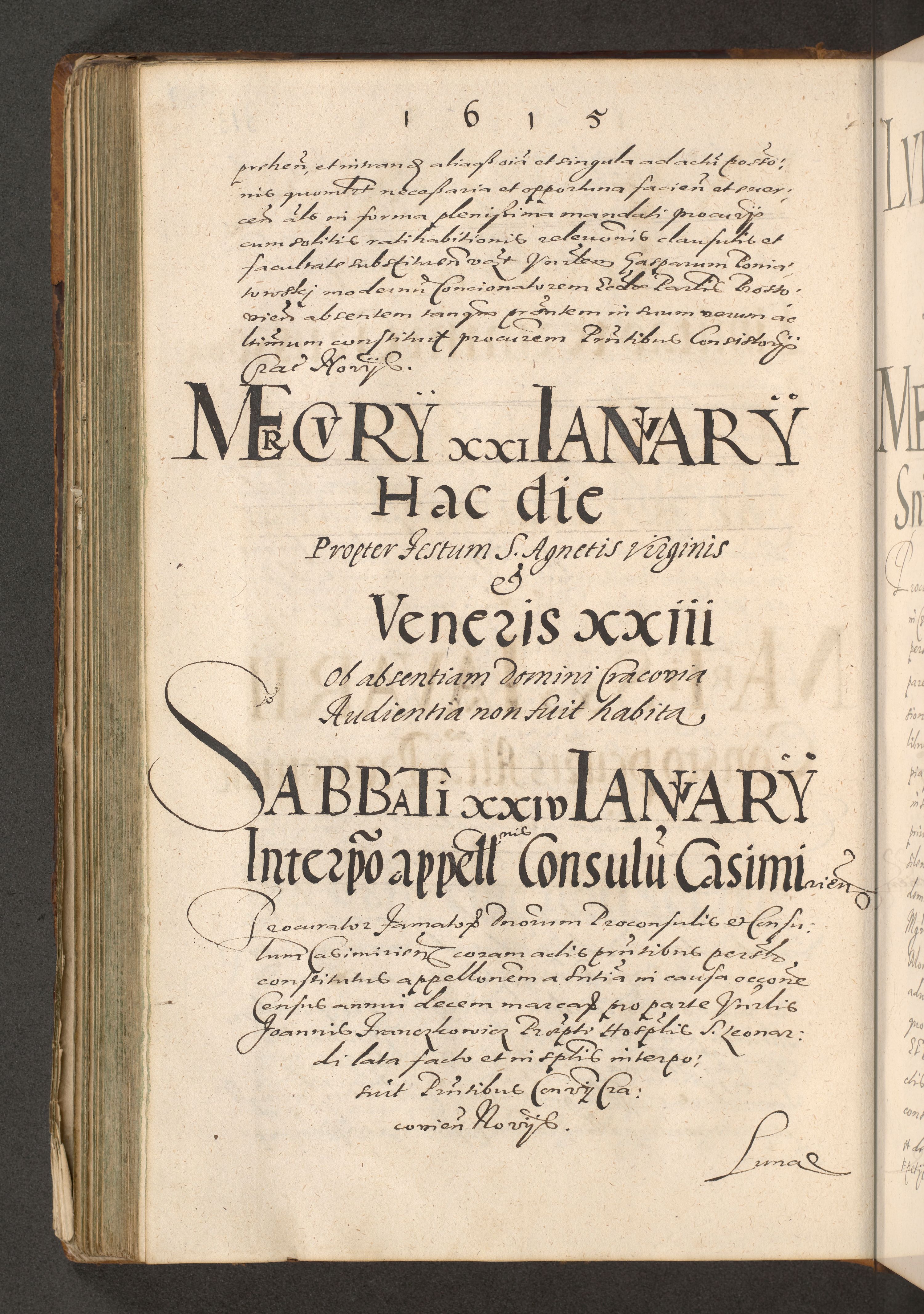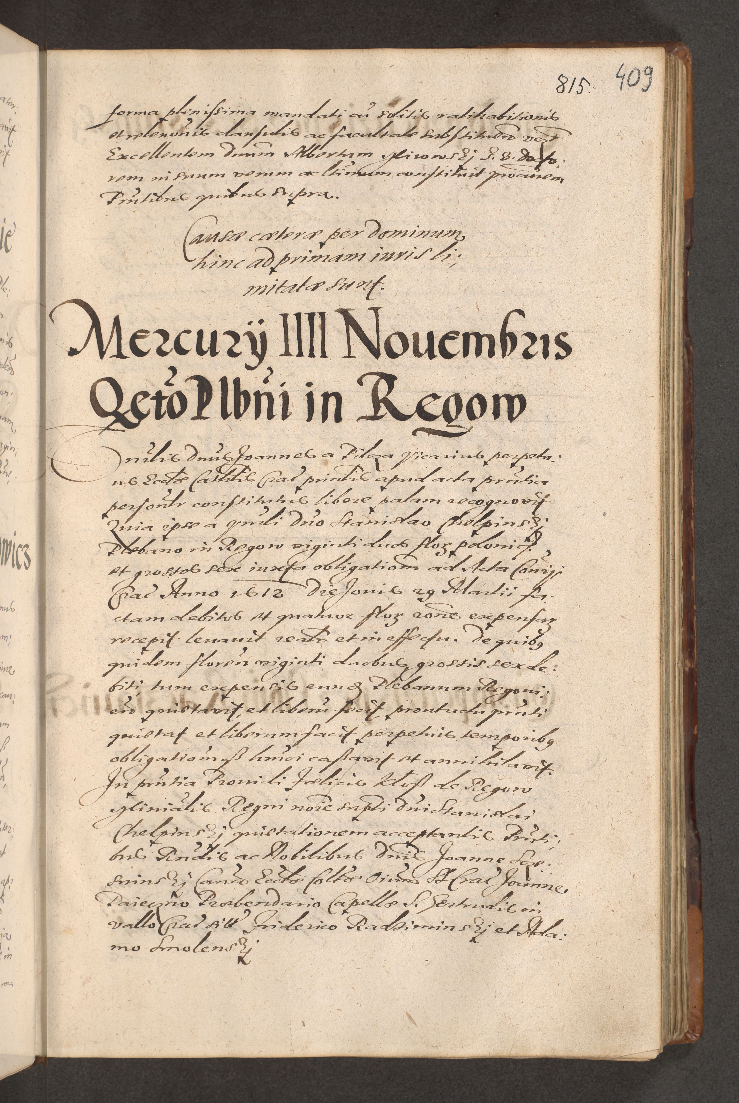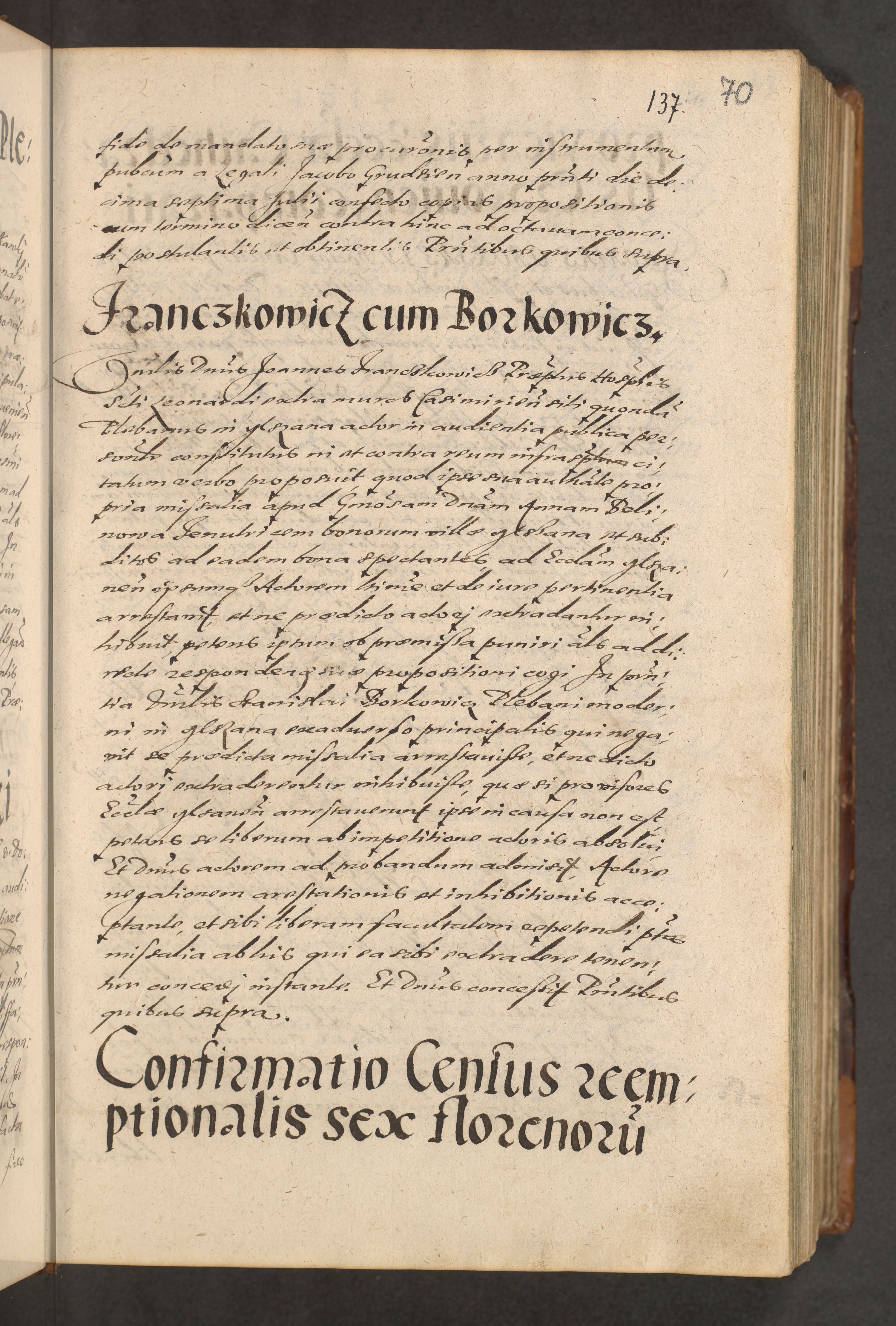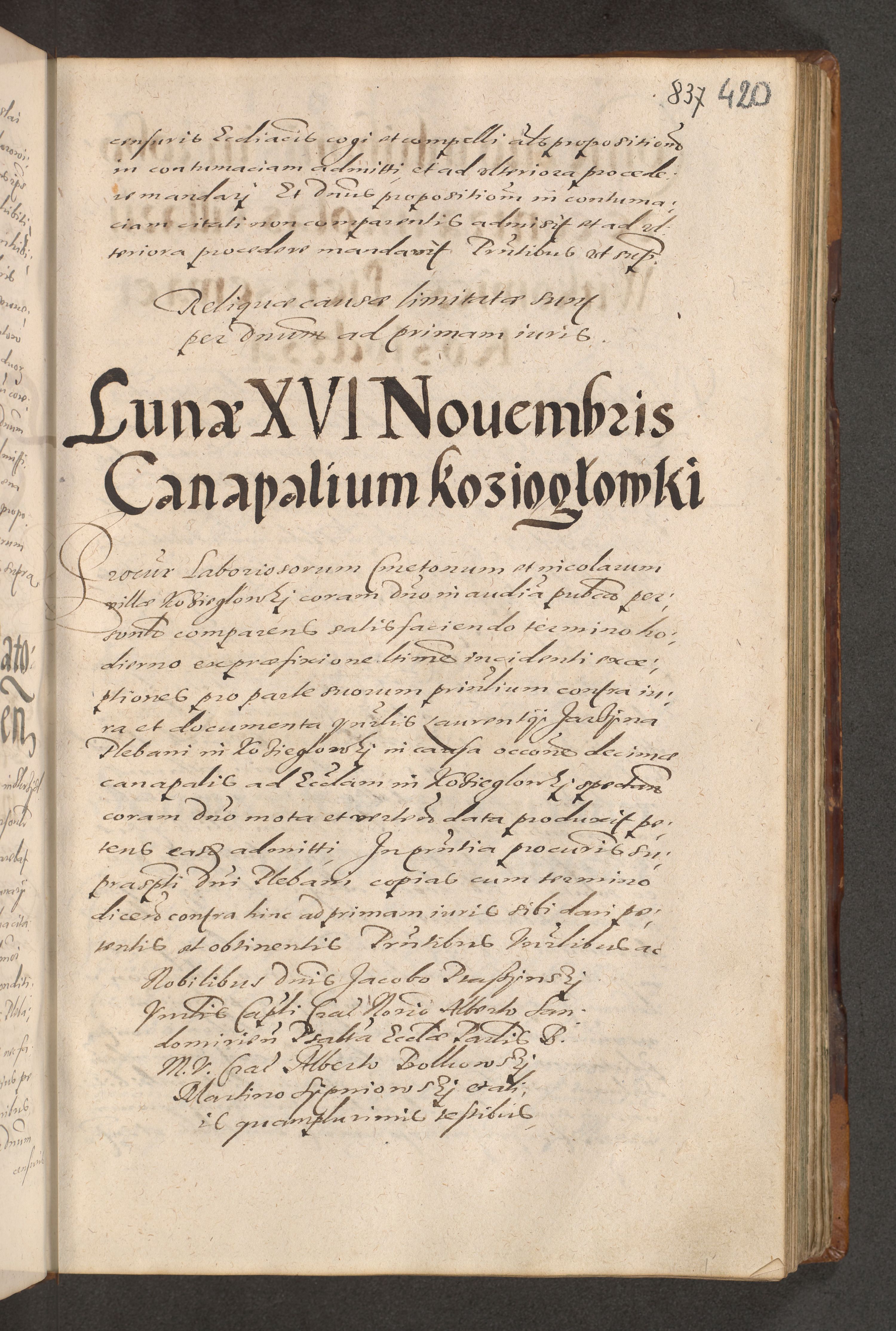 Illustrissimo et Reverendissimo in Christo Patre Domino Domino Petro Tylicki Dei et Apostolice Sedis Gratia Episcopo Cracoviensis Duce Severiensis Acta actorum causarum sententiarum tam interloquutoriarum quam definitivarum decretorum obligationum, quietationum, recognitionum, constitutionum procuratorum etc. etc. coram Admodum Reverendo Domino Thoma Oborski I. V. Doctore Canonico Vicario in Spiritualibus et Officiali generali Cracoviensis in anno Domini Millesimo Sexcentessimo Decimoquarto Cuius Indictio duodecima Pontificus SS. D. N. D. Pauli Divina providentia Papae quinti Anno decimo foeliciter incipiunt