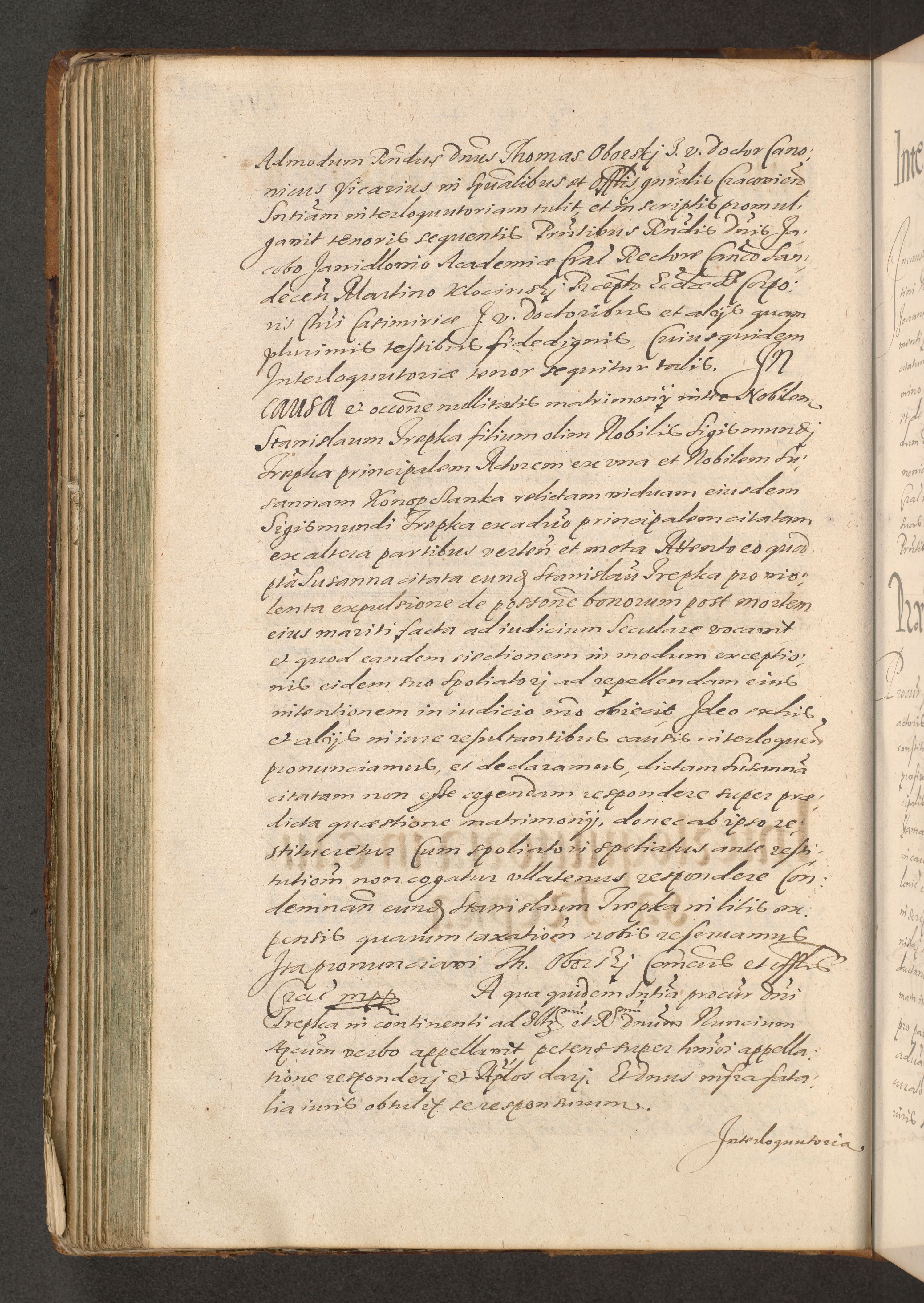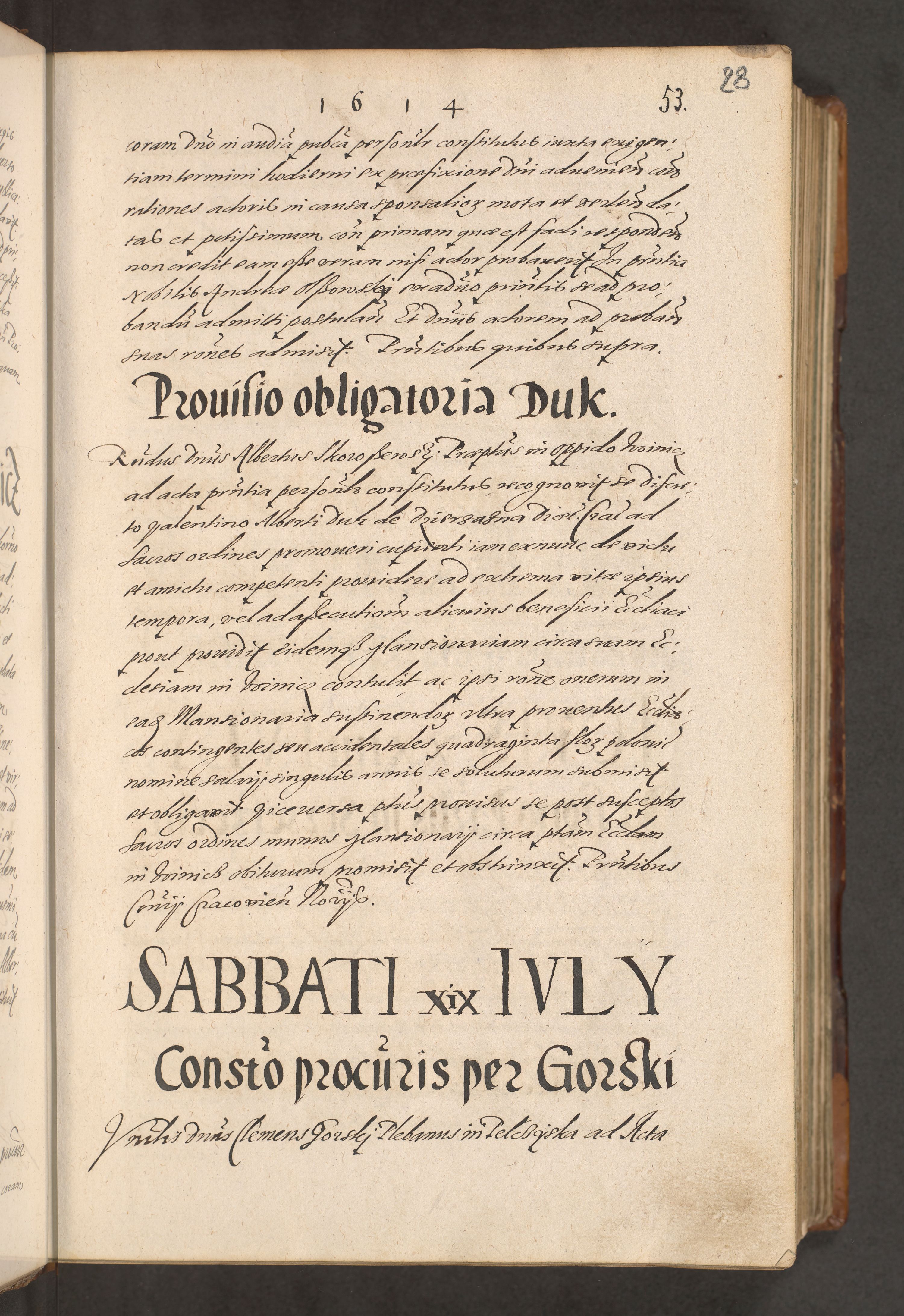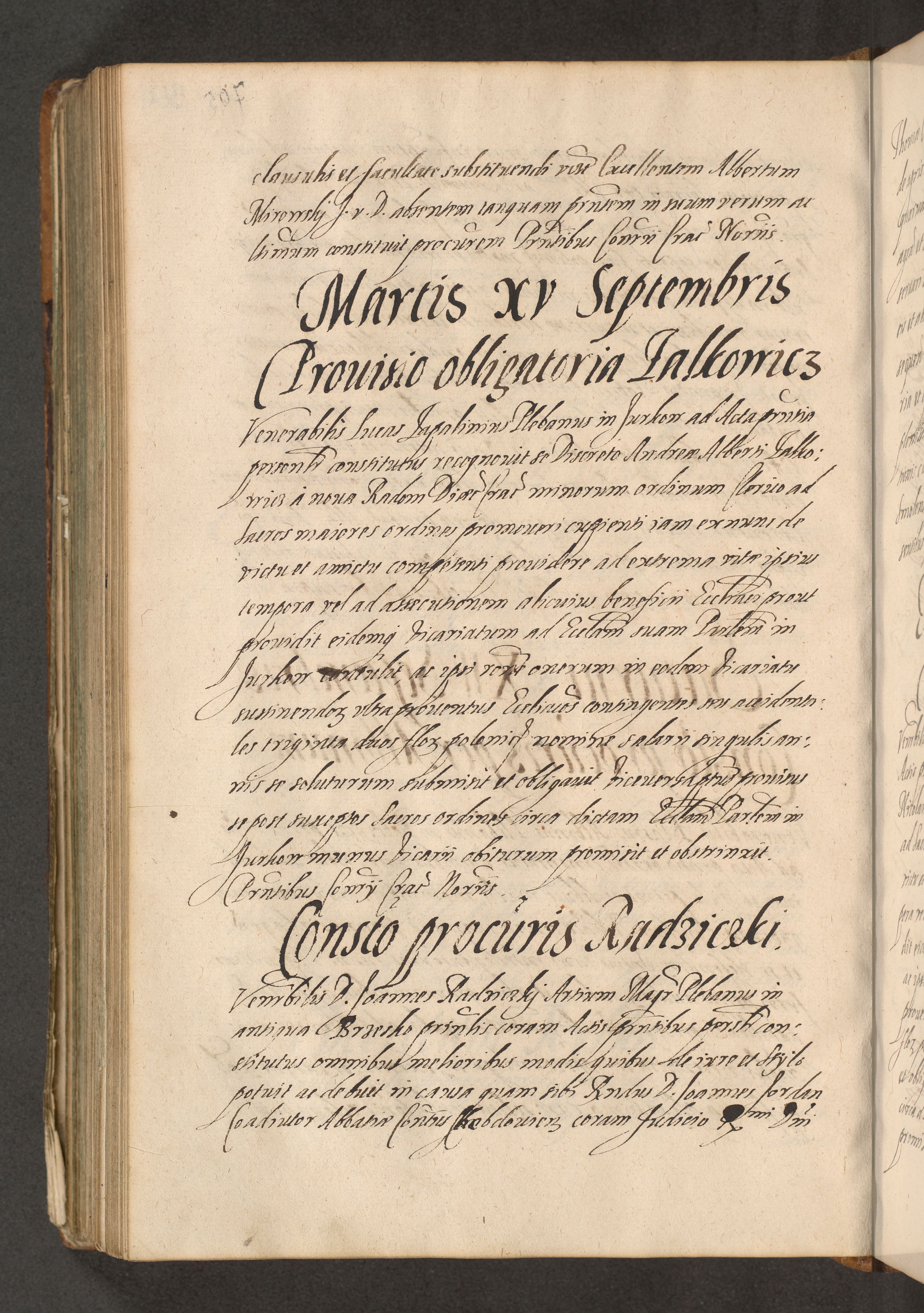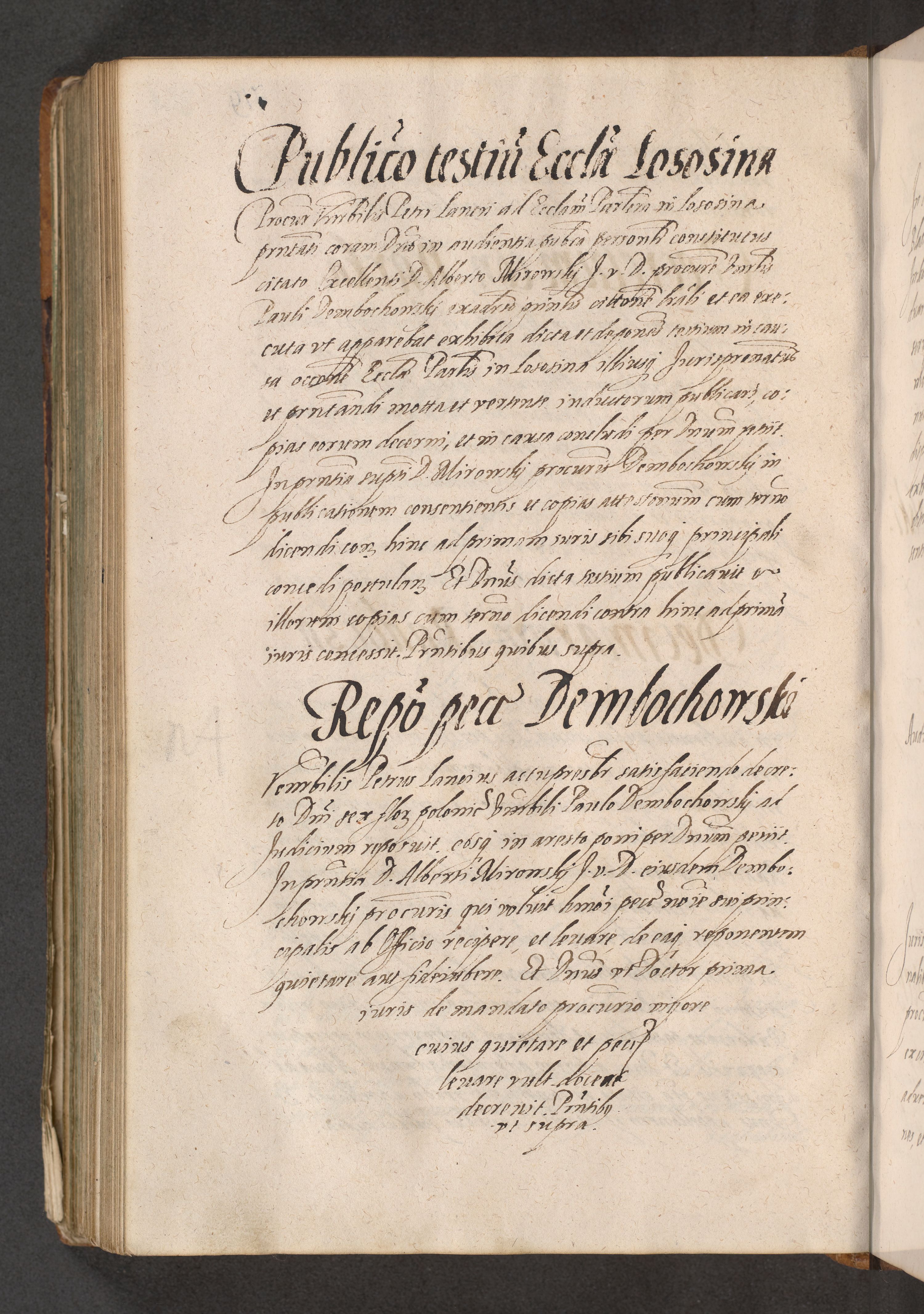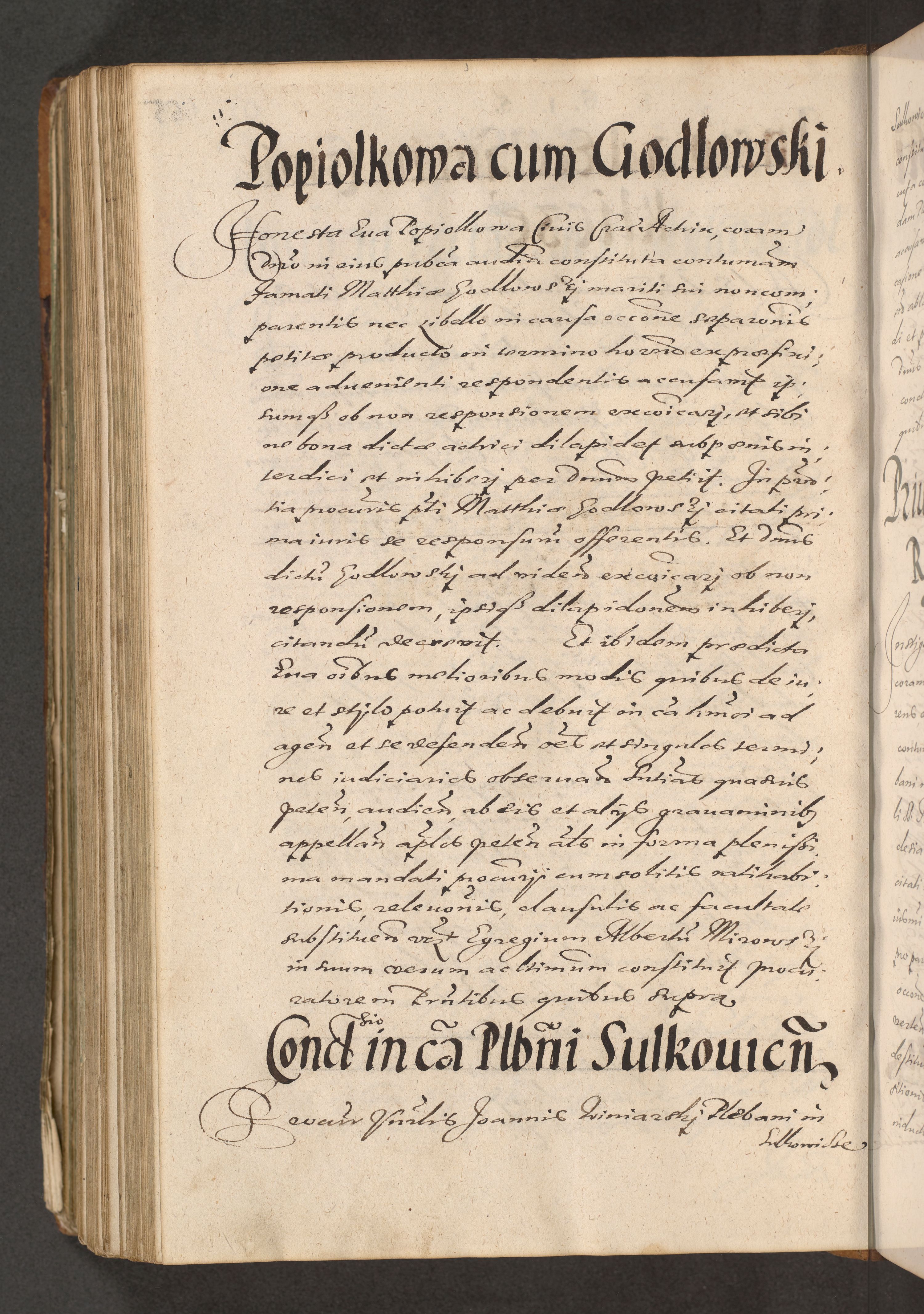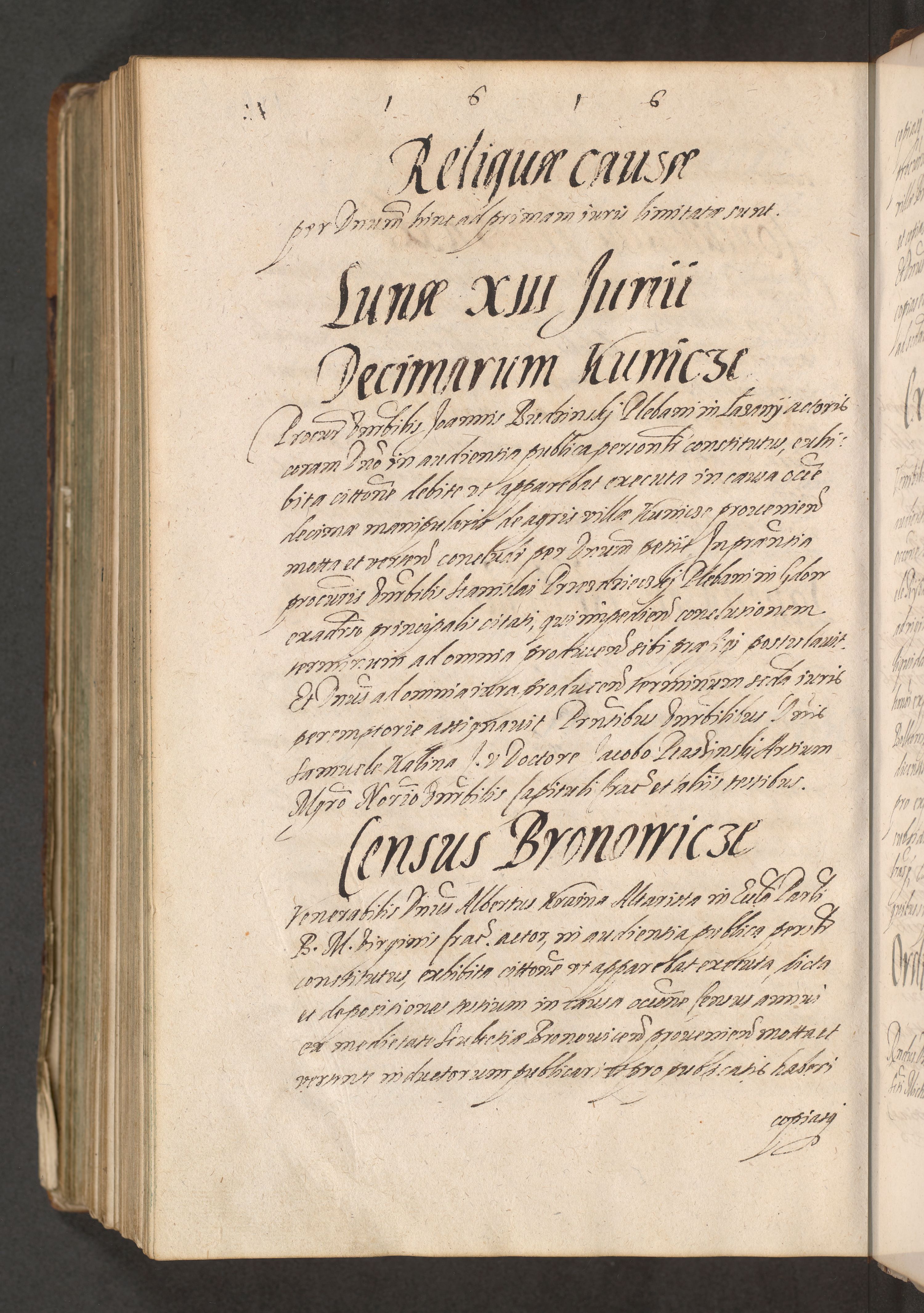 Illustrissimo et Reverendissimo in Christo Patre Domino Domino Petro Tylicki Dei et Apostolice Sedis Gratia Episcopo Cracoviensis Duce Severiensis Acta actorum causarum sententiarum tam interloquutoriarum quam definitivarum decretorum obligationum, quietationum, recognitionum, constitutionum procuratorum etc. etc. coram Admodum Reverendo Domino Thoma Oborski I. V. Doctore Canonico Vicario in Spiritualibus et Officiali generali Cracoviensis in anno Domini Millesimo Sexcentessimo Decimoquarto Cuius Indictio duodecima Pontificus SS. D. N. D. Pauli Divina providentia Papae quinti Anno decimo foeliciter incipiunt