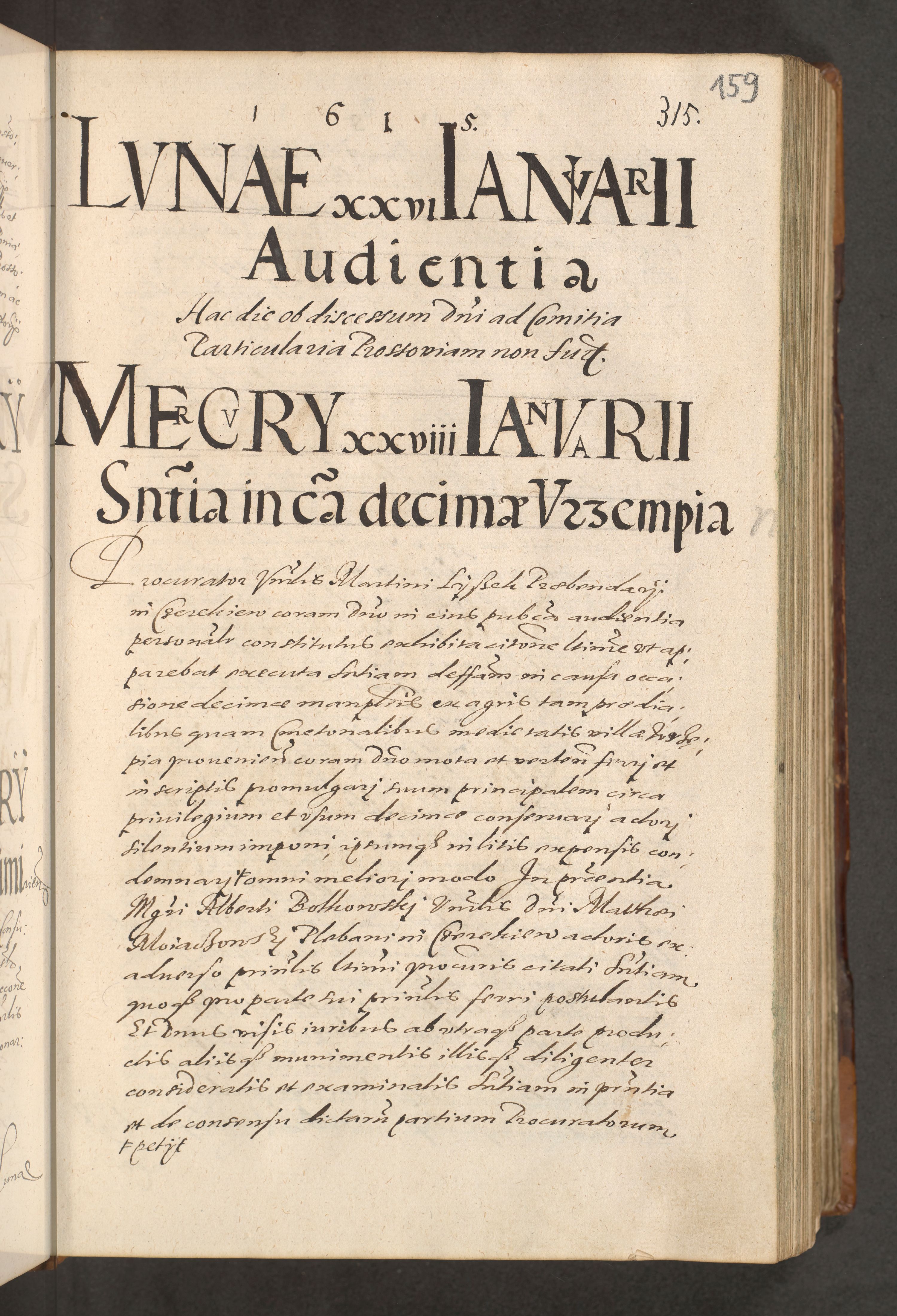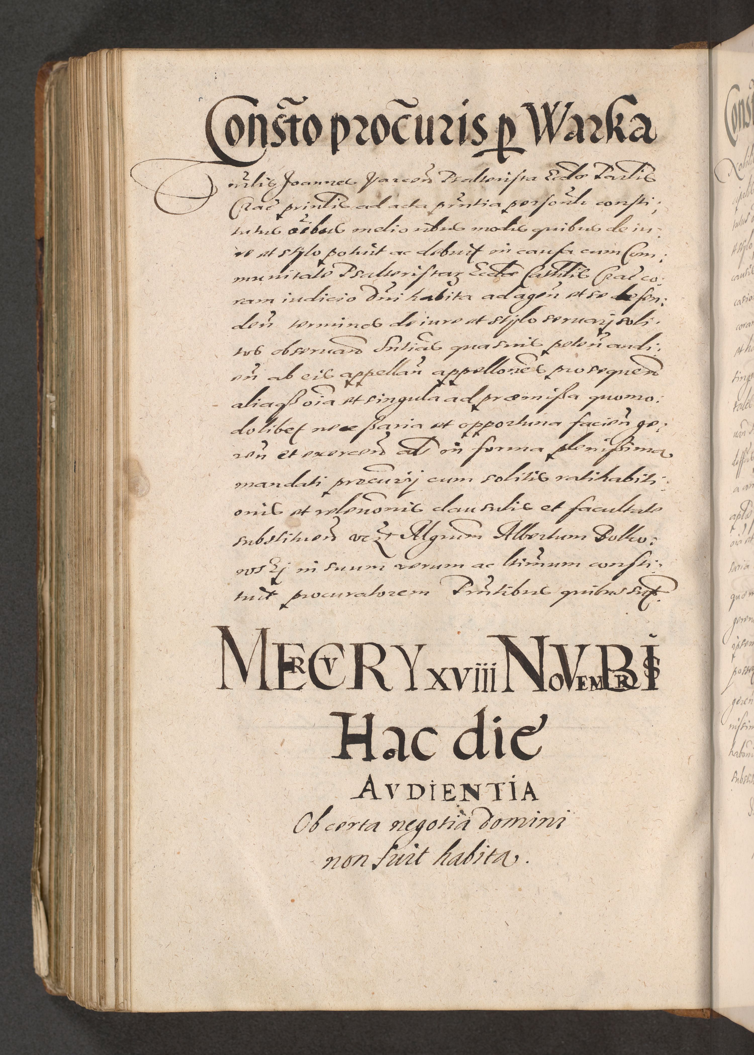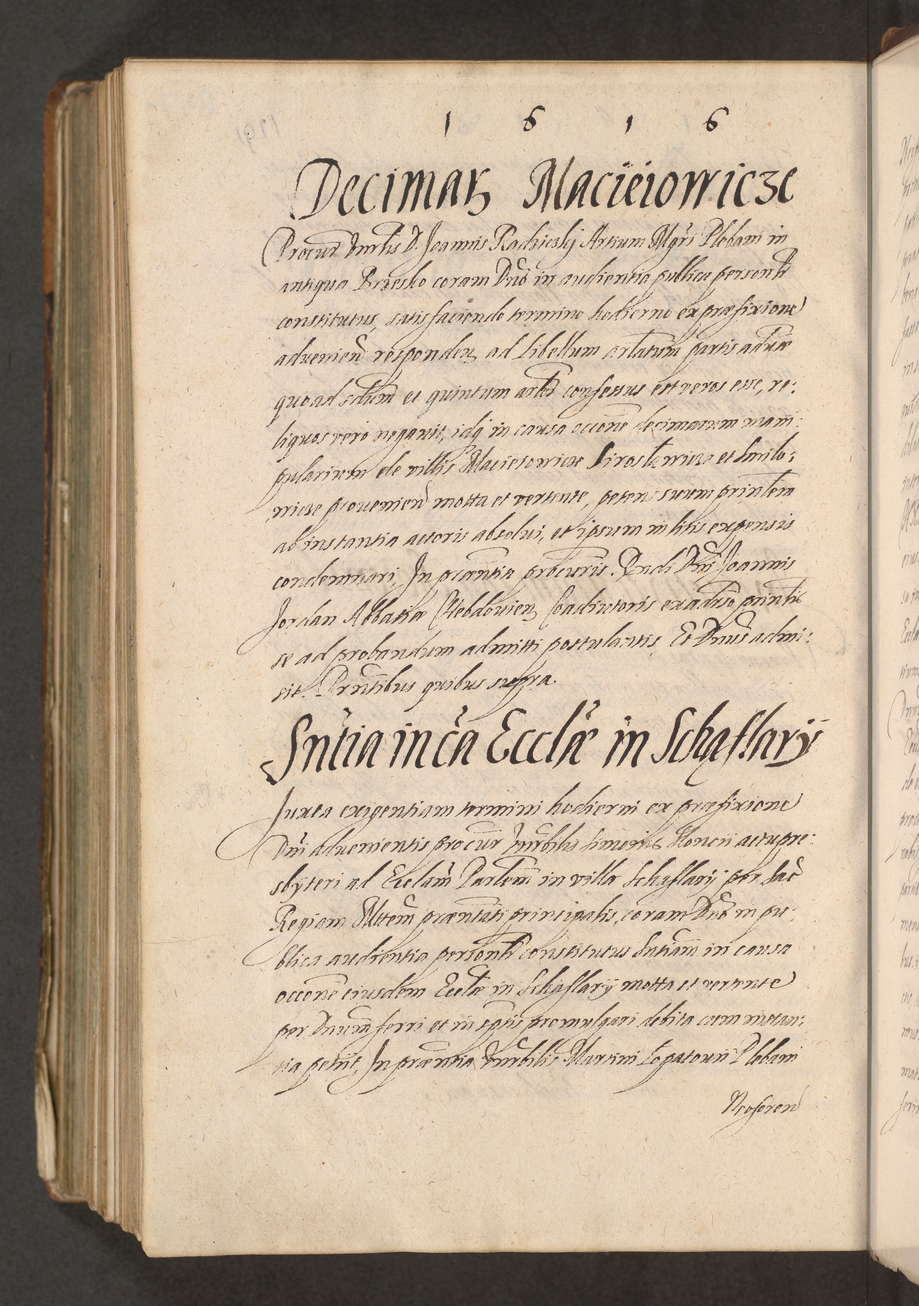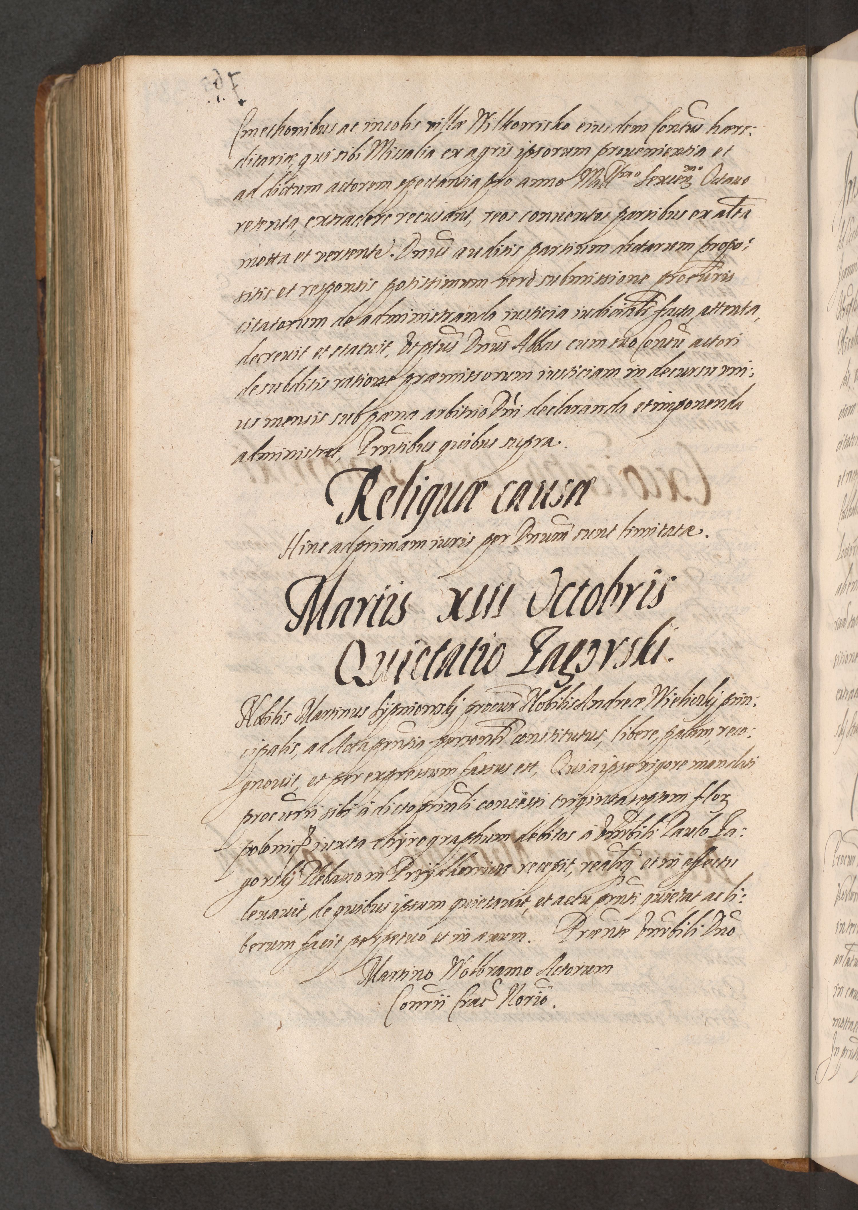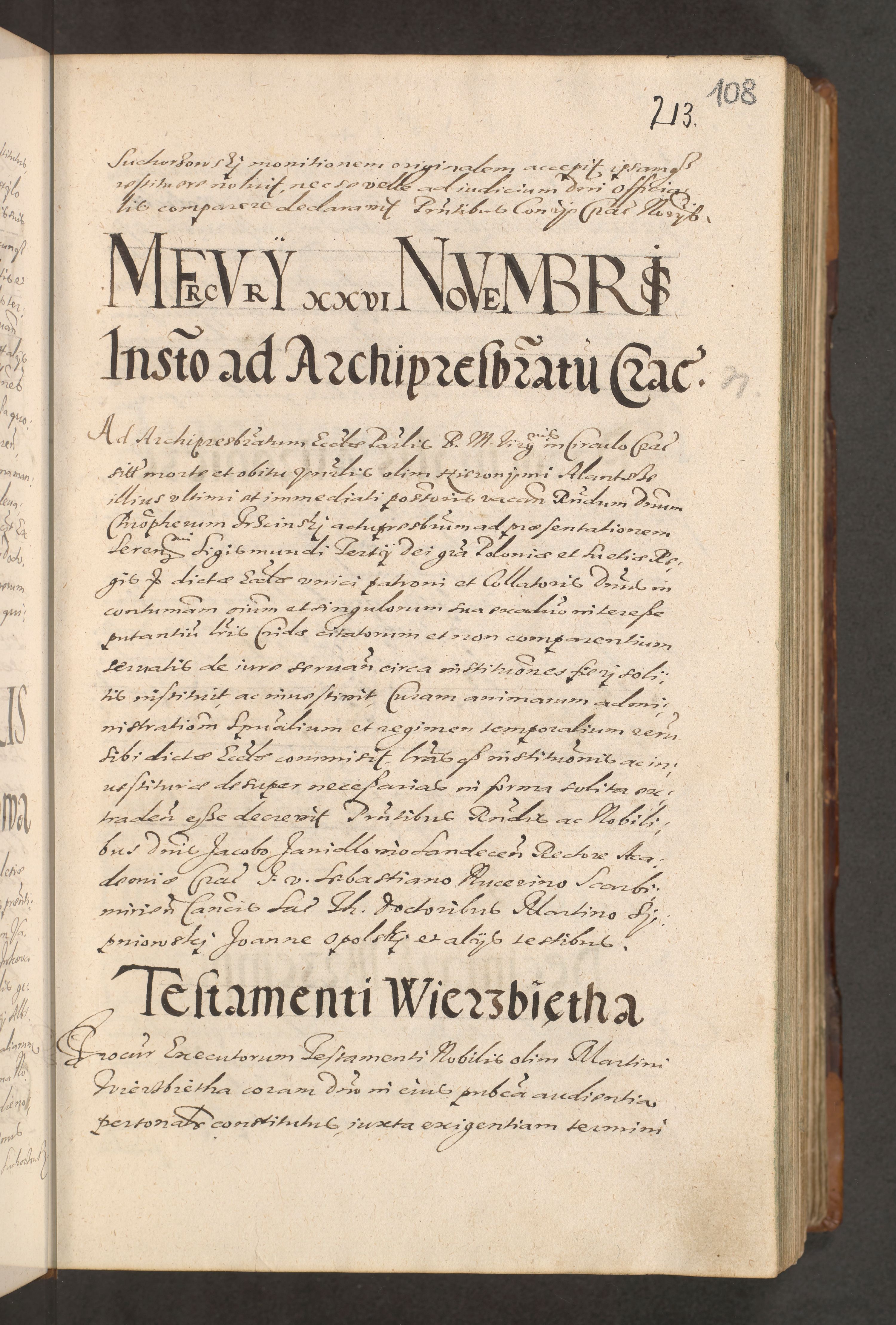 Illustrissimo et Reverendissimo in Christo Patre Domino Domino Petro Tylicki Dei et Apostolice Sedis Gratia Episcopo Cracoviensis Duce Severiensis Acta actorum causarum sententiarum tam interloquutoriarum quam definitivarum decretorum obligationum, quietationum, recognitionum, constitutionum procuratorum etc. etc. coram Admodum Reverendo Domino Thoma Oborski I. V. Doctore Canonico Vicario in Spiritualibus et Officiali generali Cracoviensis in anno Domini Millesimo Sexcentessimo Decimoquarto Cuius Indictio duodecima Pontificus SS. D. N. D. Pauli Divina providentia Papae quinti Anno decimo foeliciter incipiunt