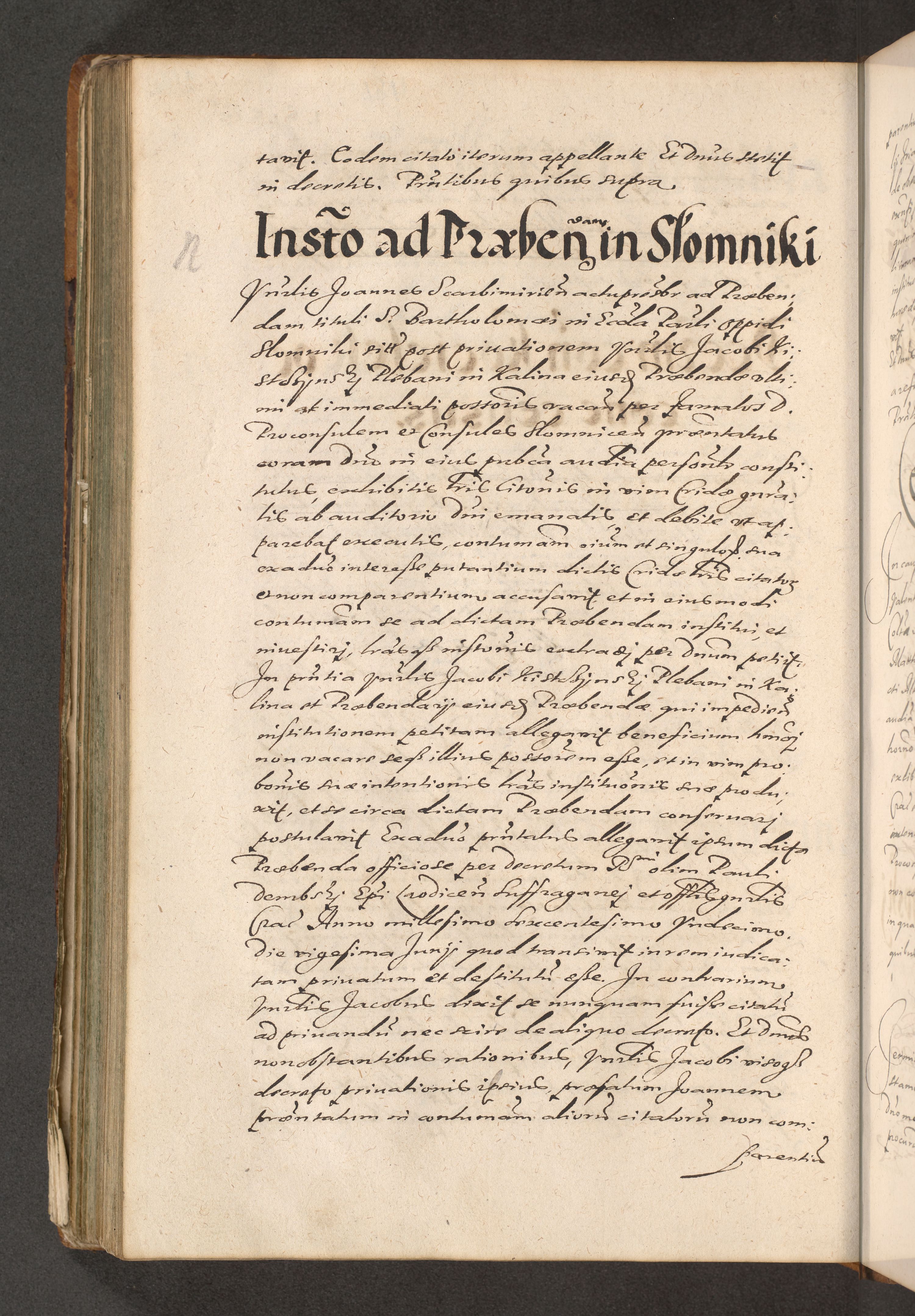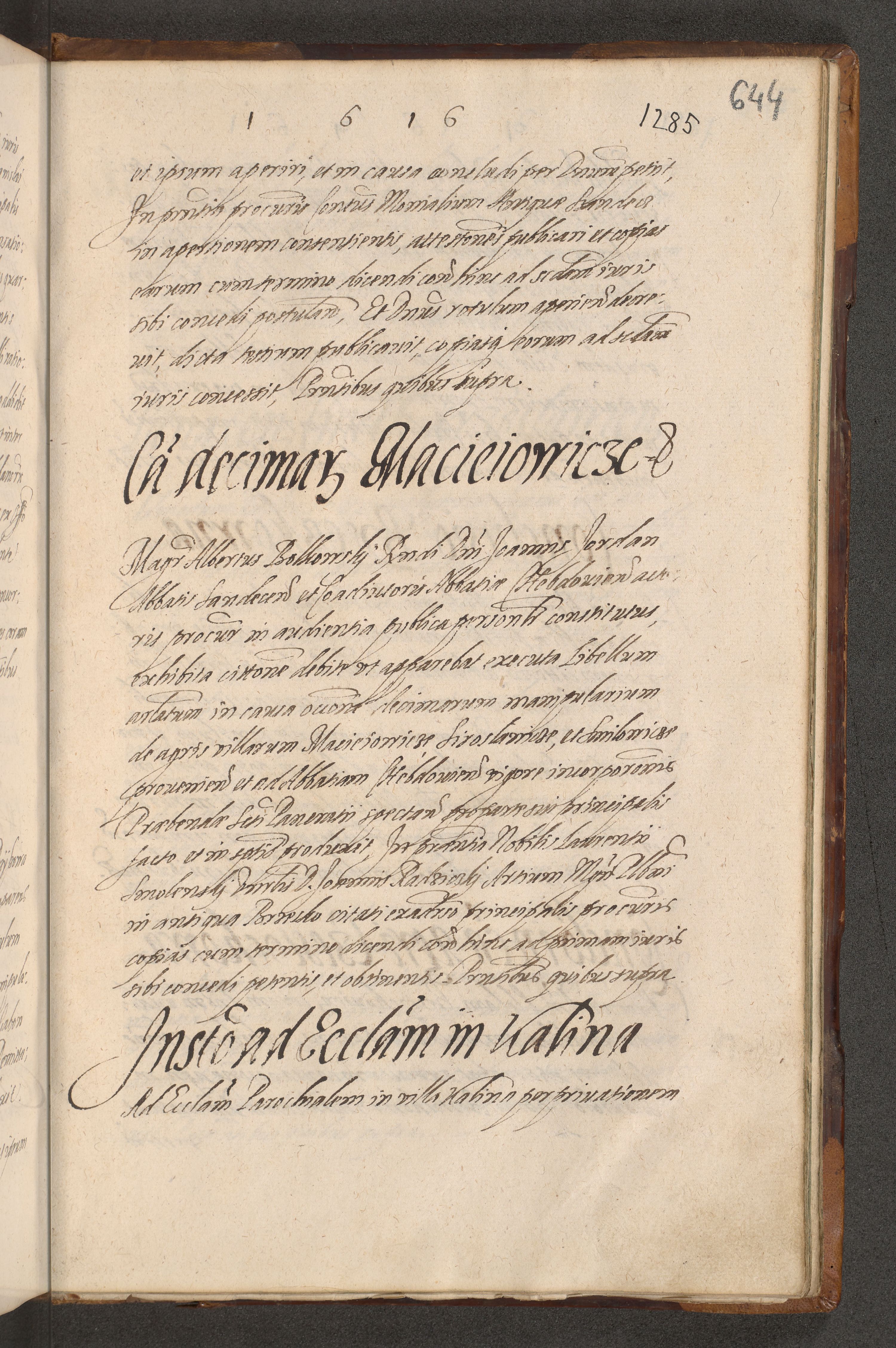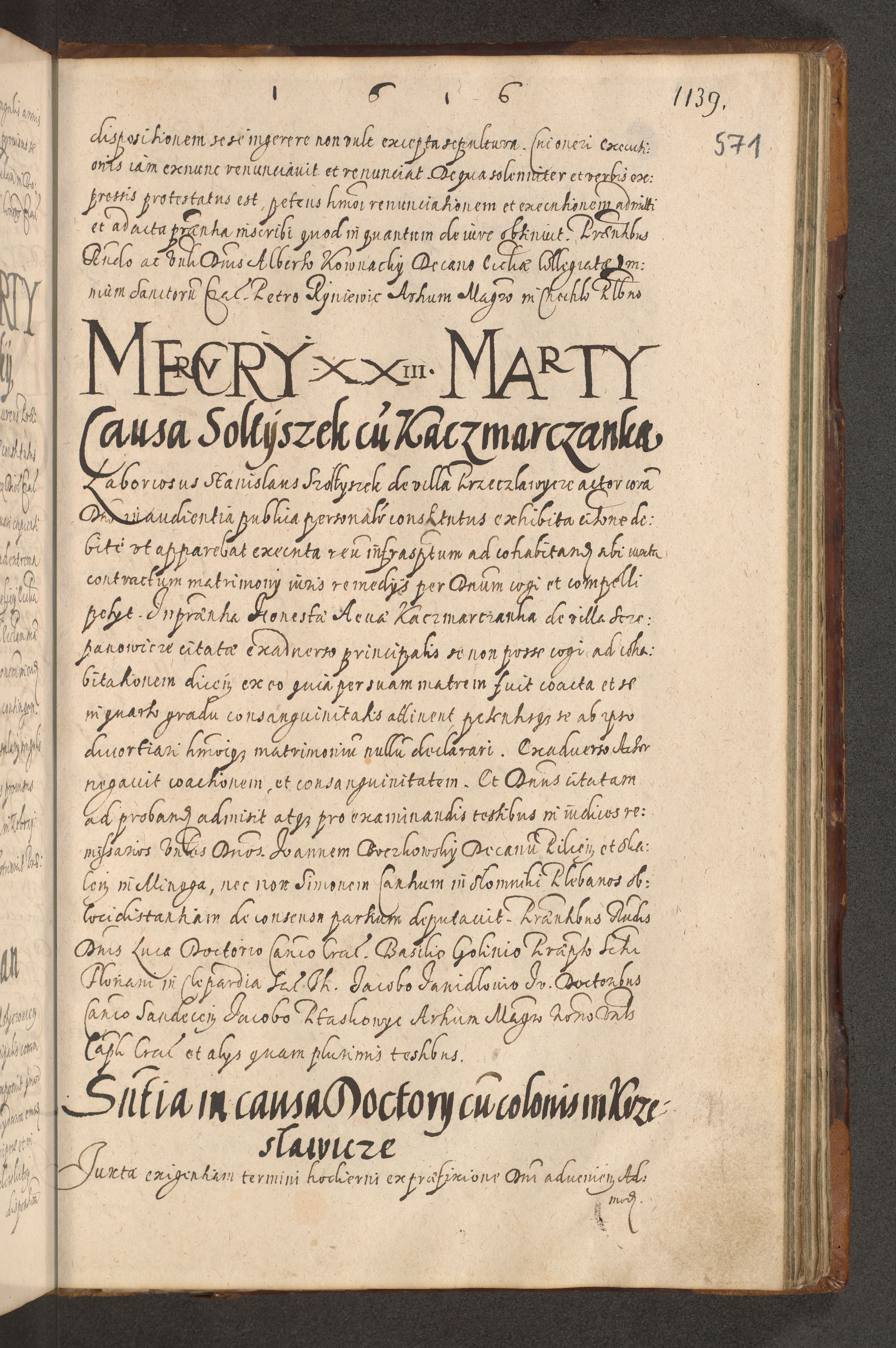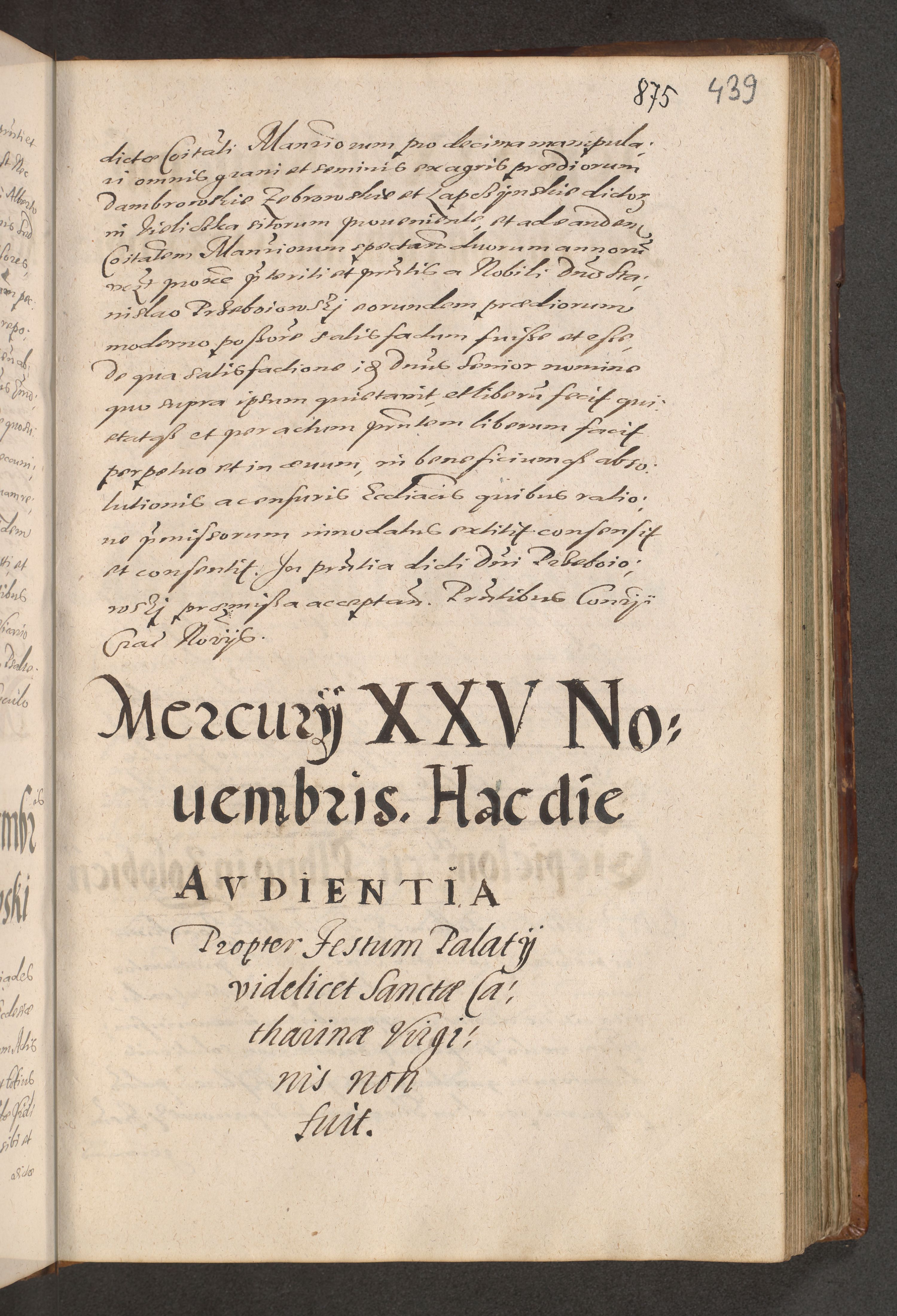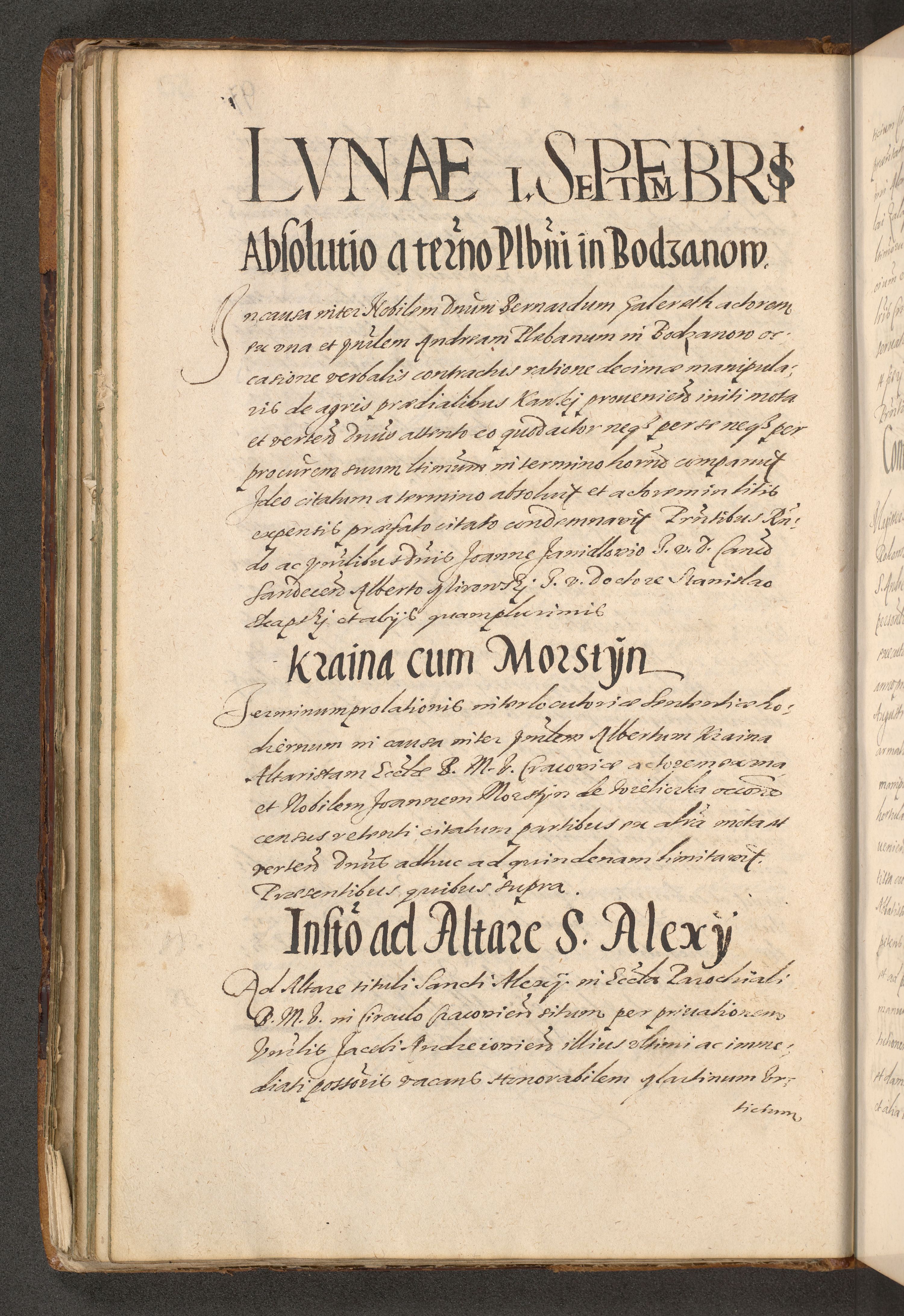 Illustrissimo et Reverendissimo in Christo Patre Domino Domino Petro Tylicki Dei et Apostolice Sedis Gratia Episcopo Cracoviensis Duce Severiensis Acta actorum causarum sententiarum tam interloquutoriarum quam definitivarum decretorum obligationum, quietationum, recognitionum, constitutionum procuratorum etc. etc. coram Admodum Reverendo Domino Thoma Oborski I. V. Doctore Canonico Vicario in Spiritualibus et Officiali generali Cracoviensis in anno Domini Millesimo Sexcentessimo Decimoquarto Cuius Indictio duodecima Pontificus SS. D. N. D. Pauli Divina providentia Papae quinti Anno decimo foeliciter incipiunt