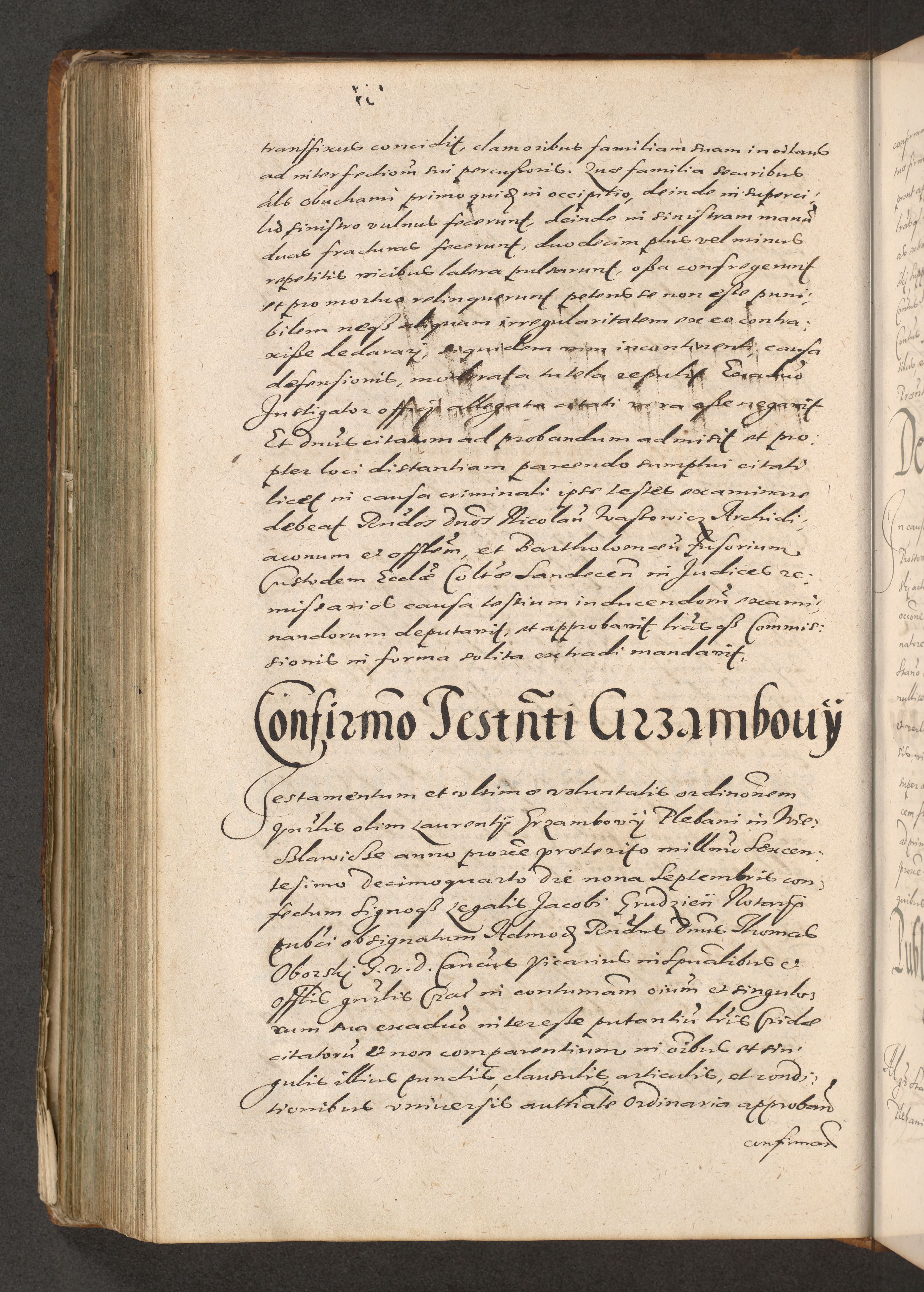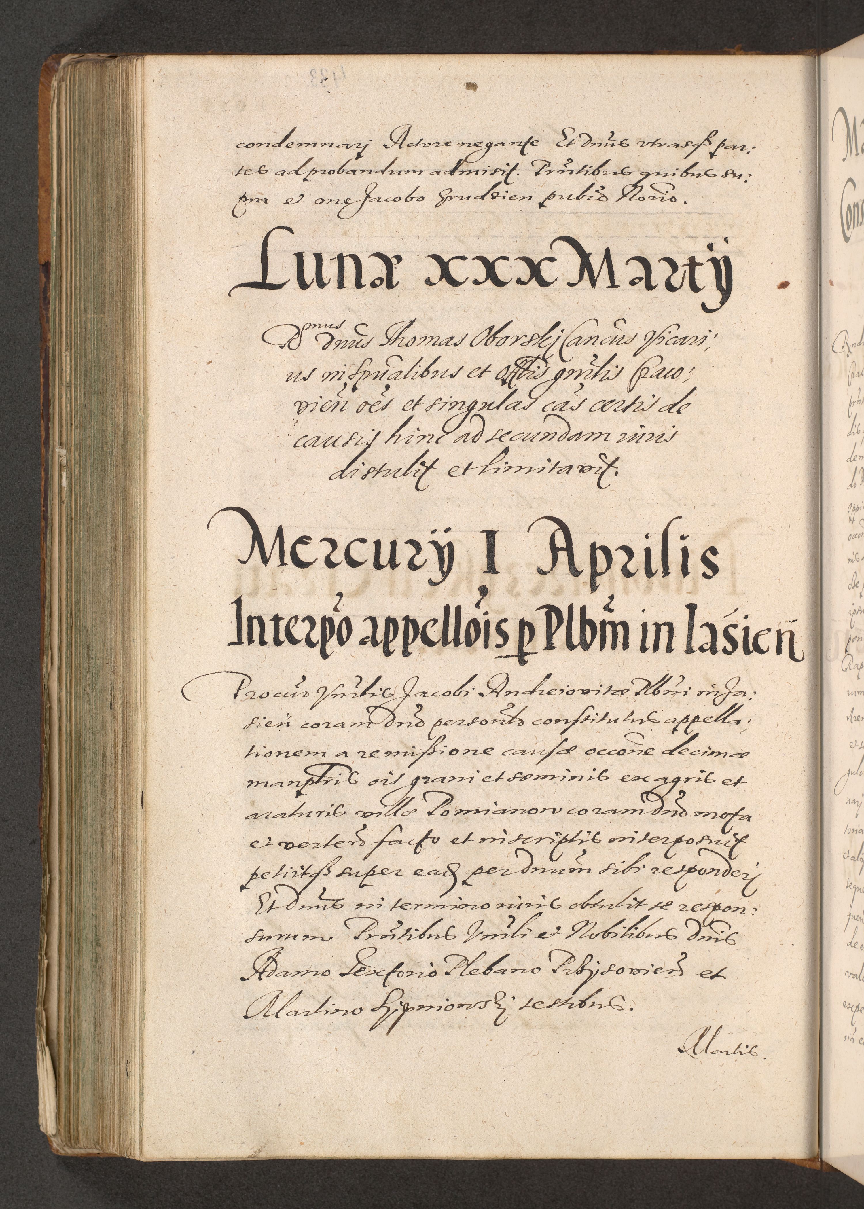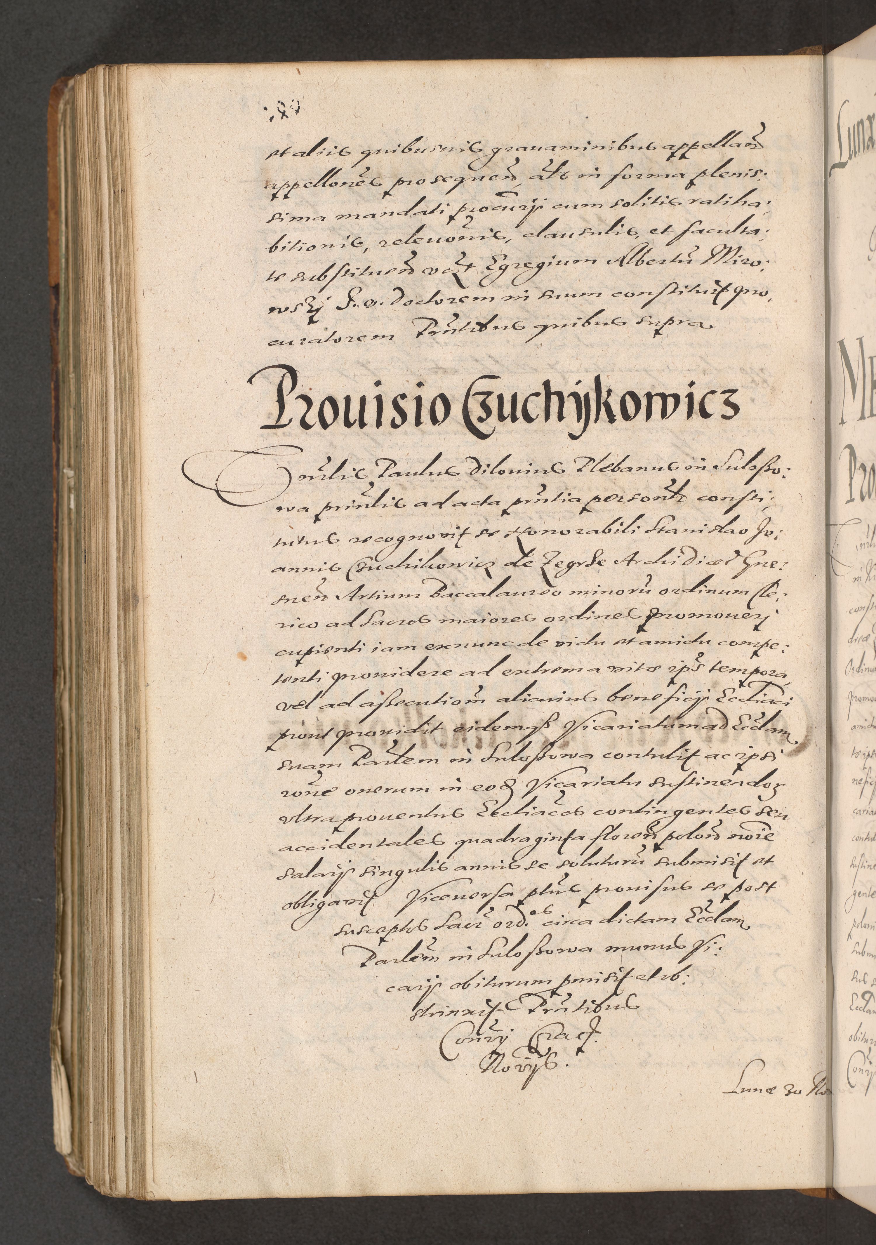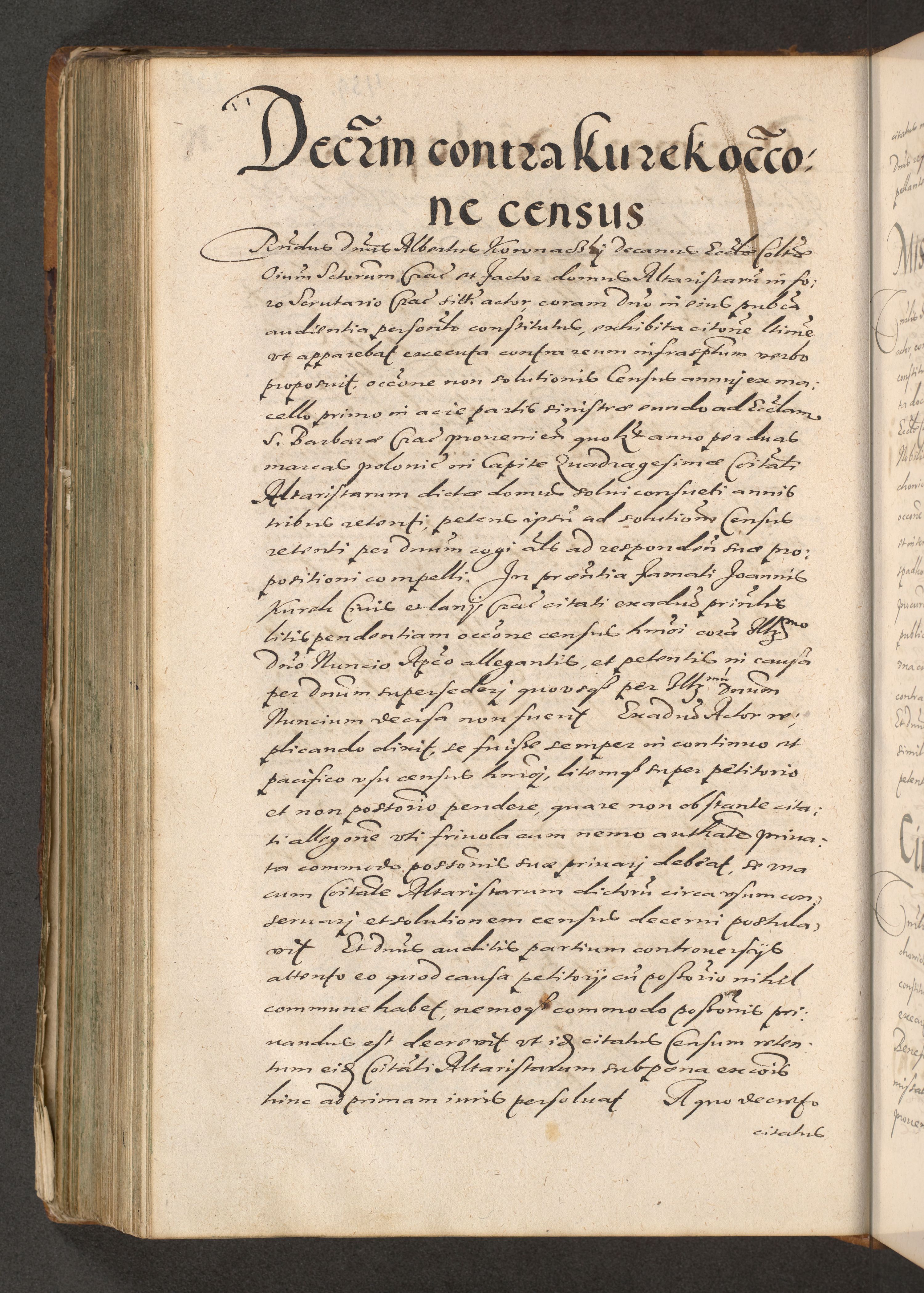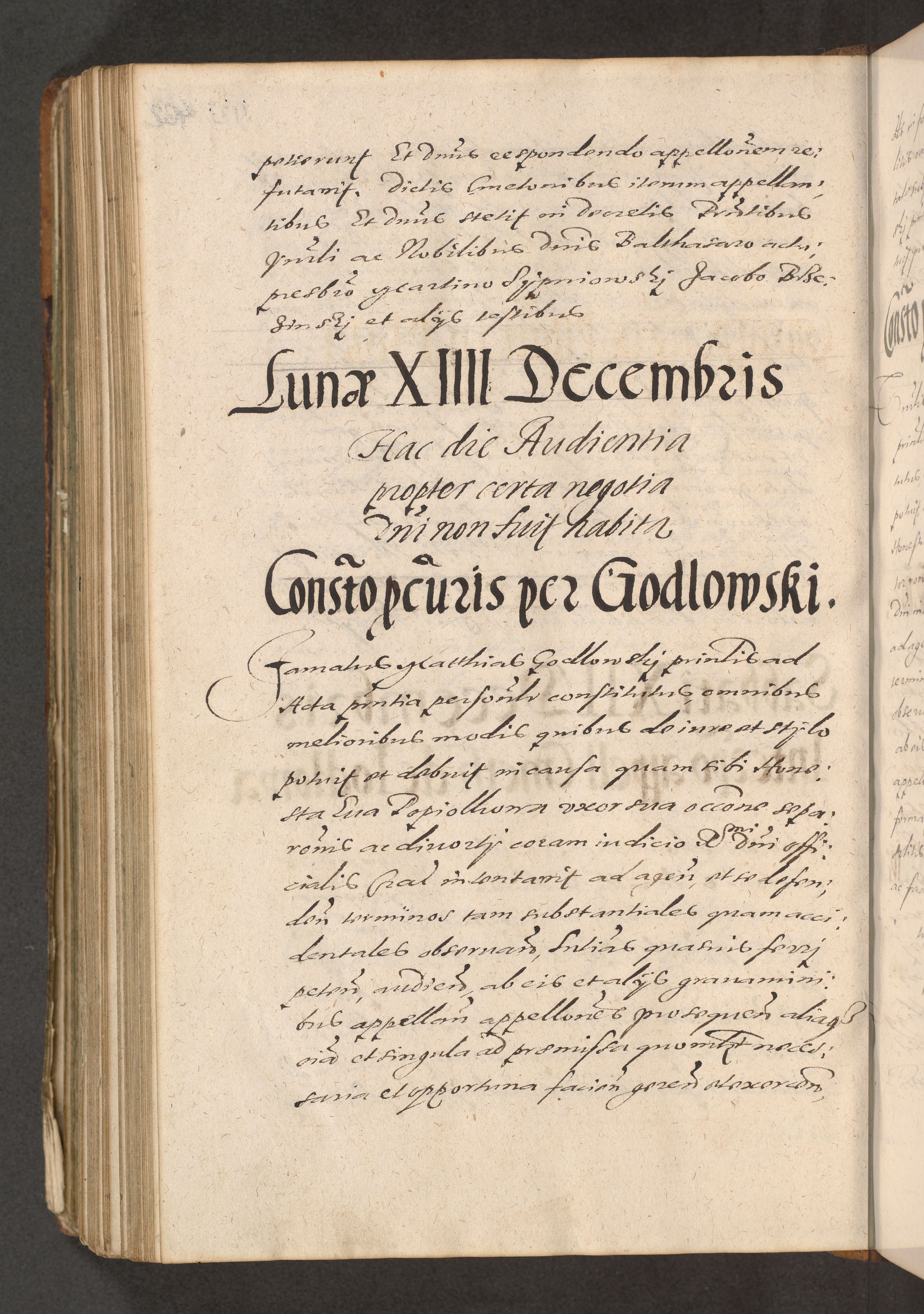 Illustrissimo et Reverendissimo in Christo Patre Domino Domino Petro Tylicki Dei et Apostolice Sedis Gratia Episcopo Cracoviensis Duce Severiensis Acta actorum causarum sententiarum tam interloquutoriarum quam definitivarum decretorum obligationum, quietationum, recognitionum, constitutionum procuratorum etc. etc. coram Admodum Reverendo Domino Thoma Oborski I. V. Doctore Canonico Vicario in Spiritualibus et Officiali generali Cracoviensis in anno Domini Millesimo Sexcentessimo Decimoquarto Cuius Indictio duodecima Pontificus SS. D. N. D. Pauli Divina providentia Papae quinti Anno decimo foeliciter incipiunt